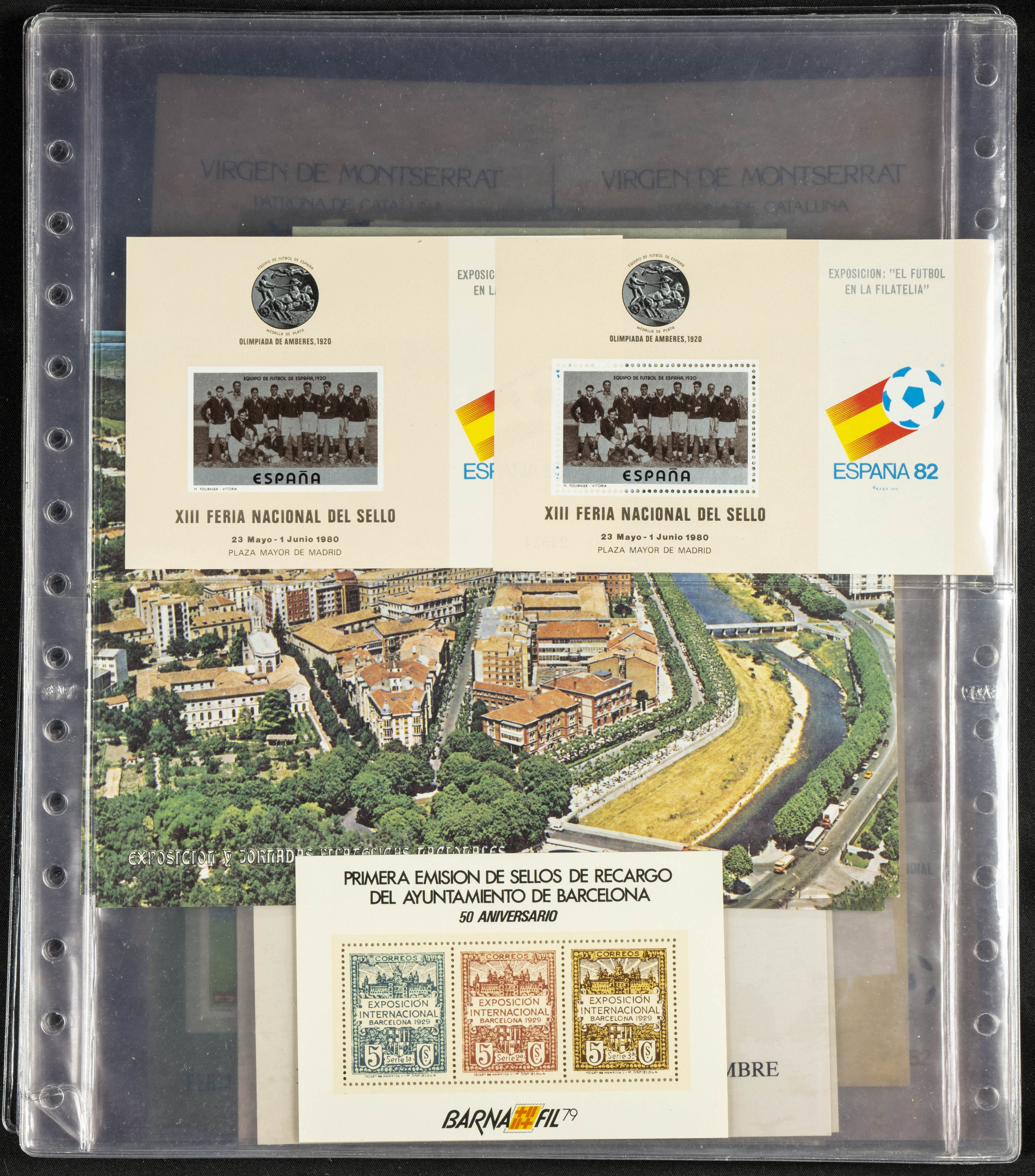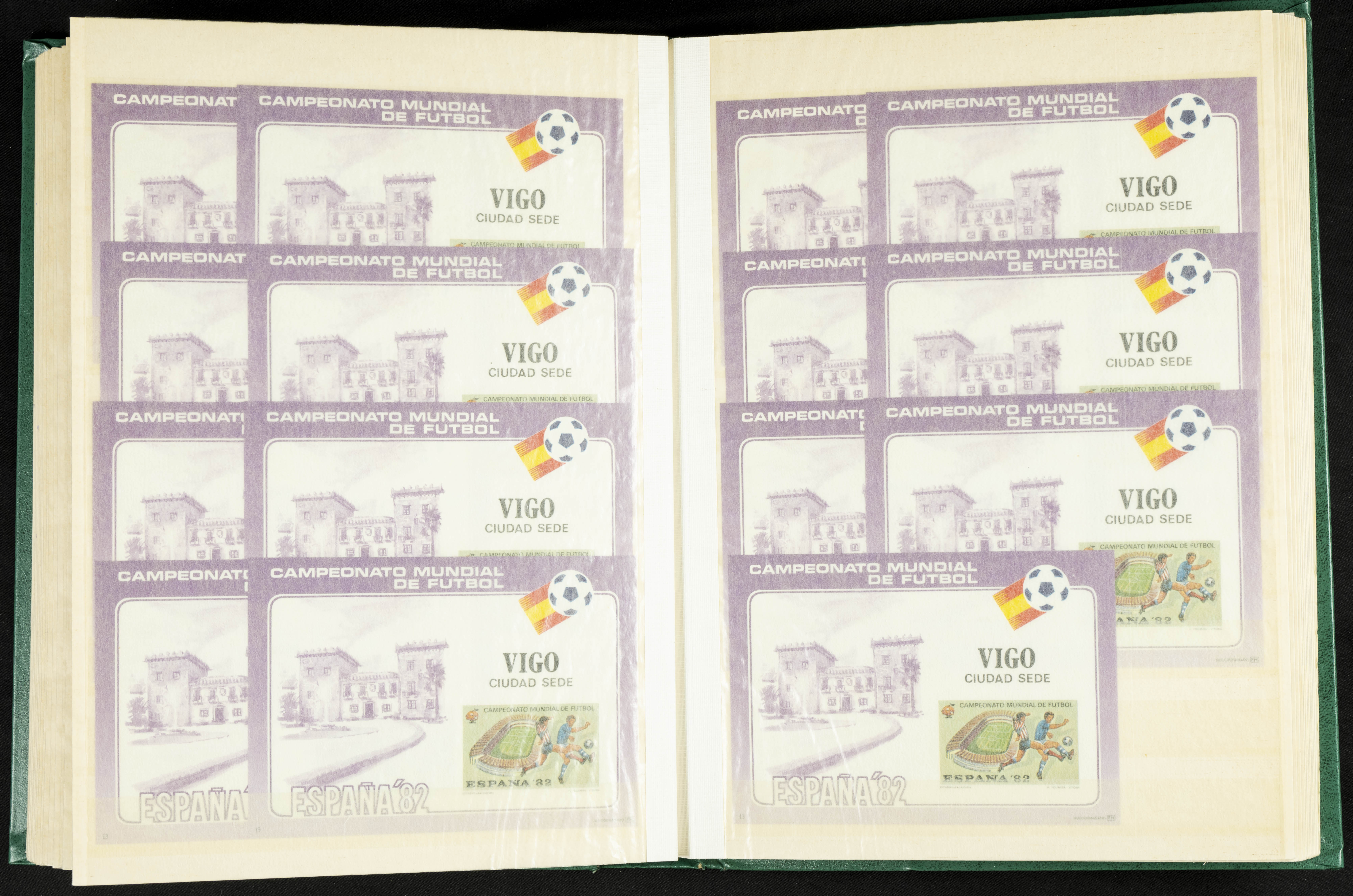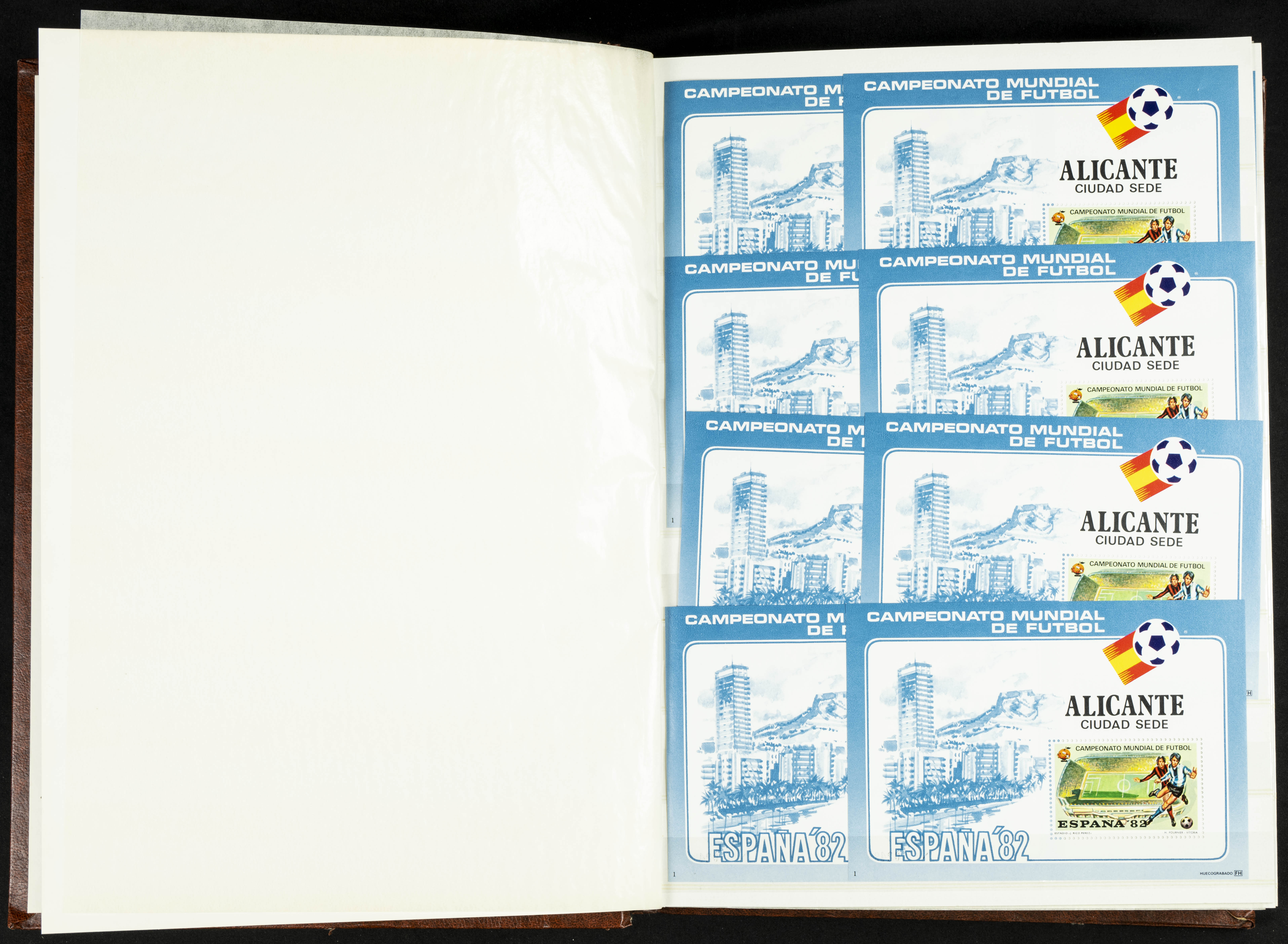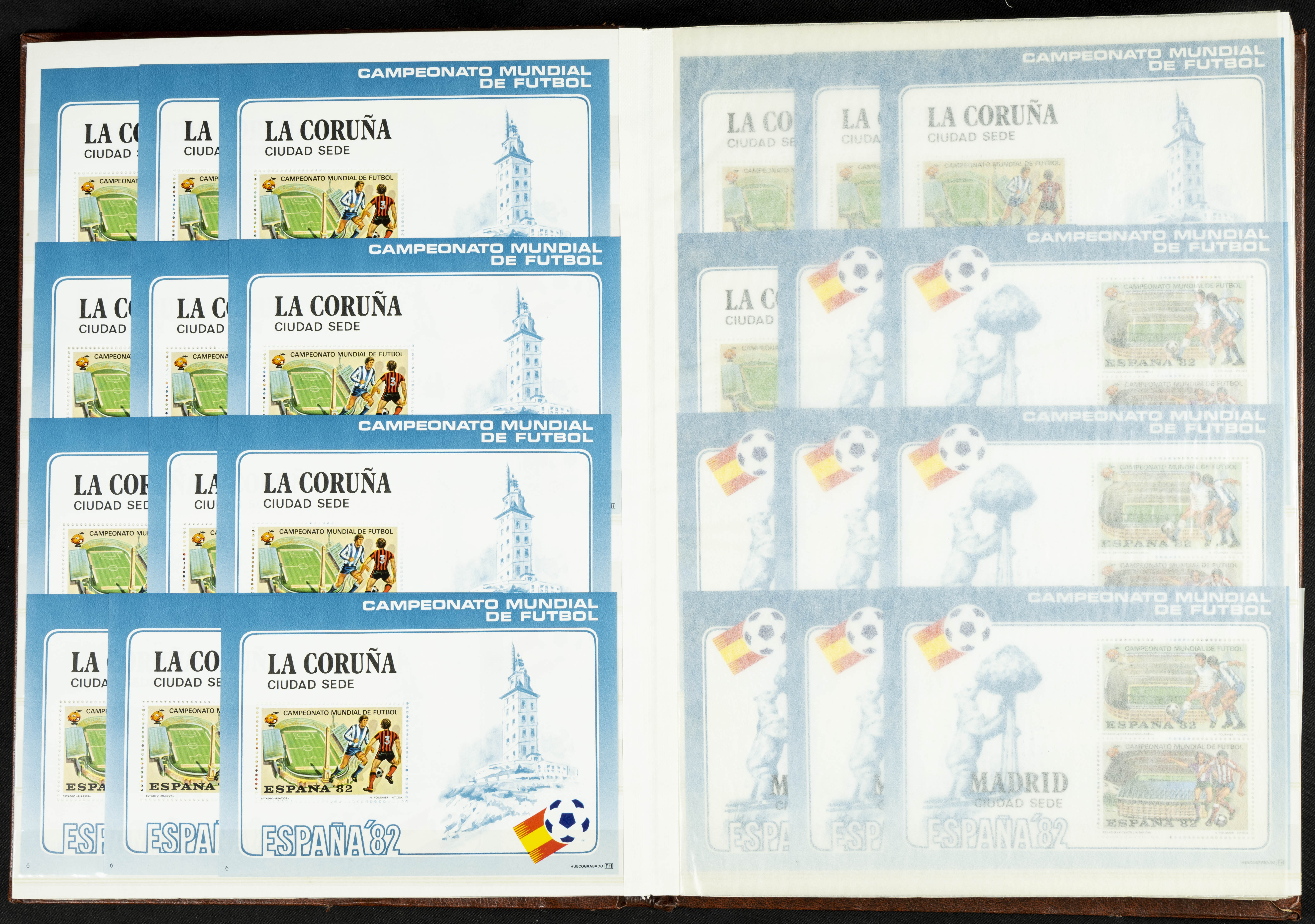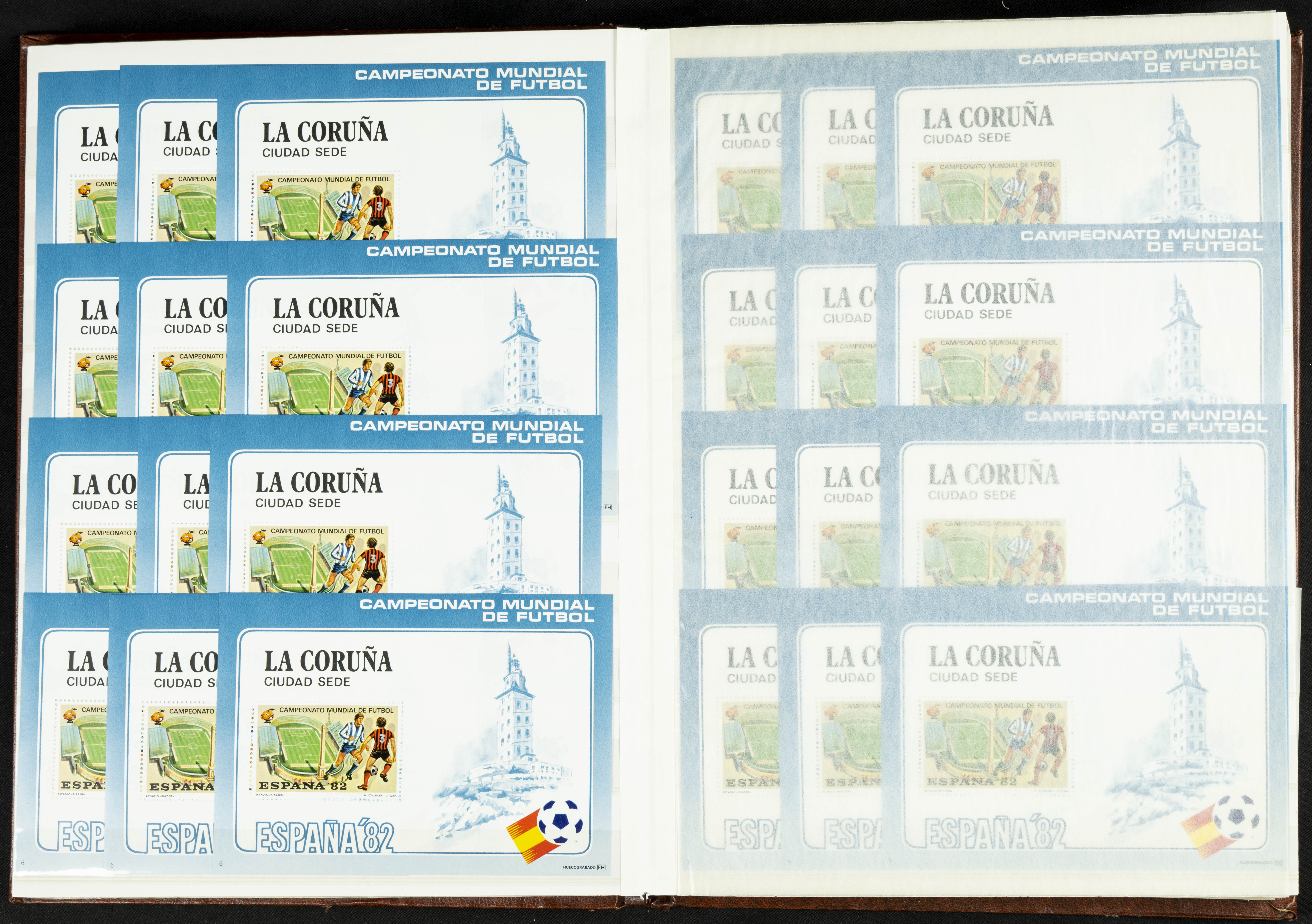 ★★/(1972ca). Conjunto de Hojas Recuerdo entre 1972 y 1982, nuevas (alguna usada) y con algunas repeticiones, incluye al menos cuarenta y cinco juegos de hojitas del Mundial 82 (Sedes) dentadas, veinticuatro juegos sin dentar, azules (dentadas), así como veinticuatro juegos sin dentar de las hojitas de las fases preliminares, entre otras. ALTISIMO VALOR DE CATALOGO. A EXAMINAR.