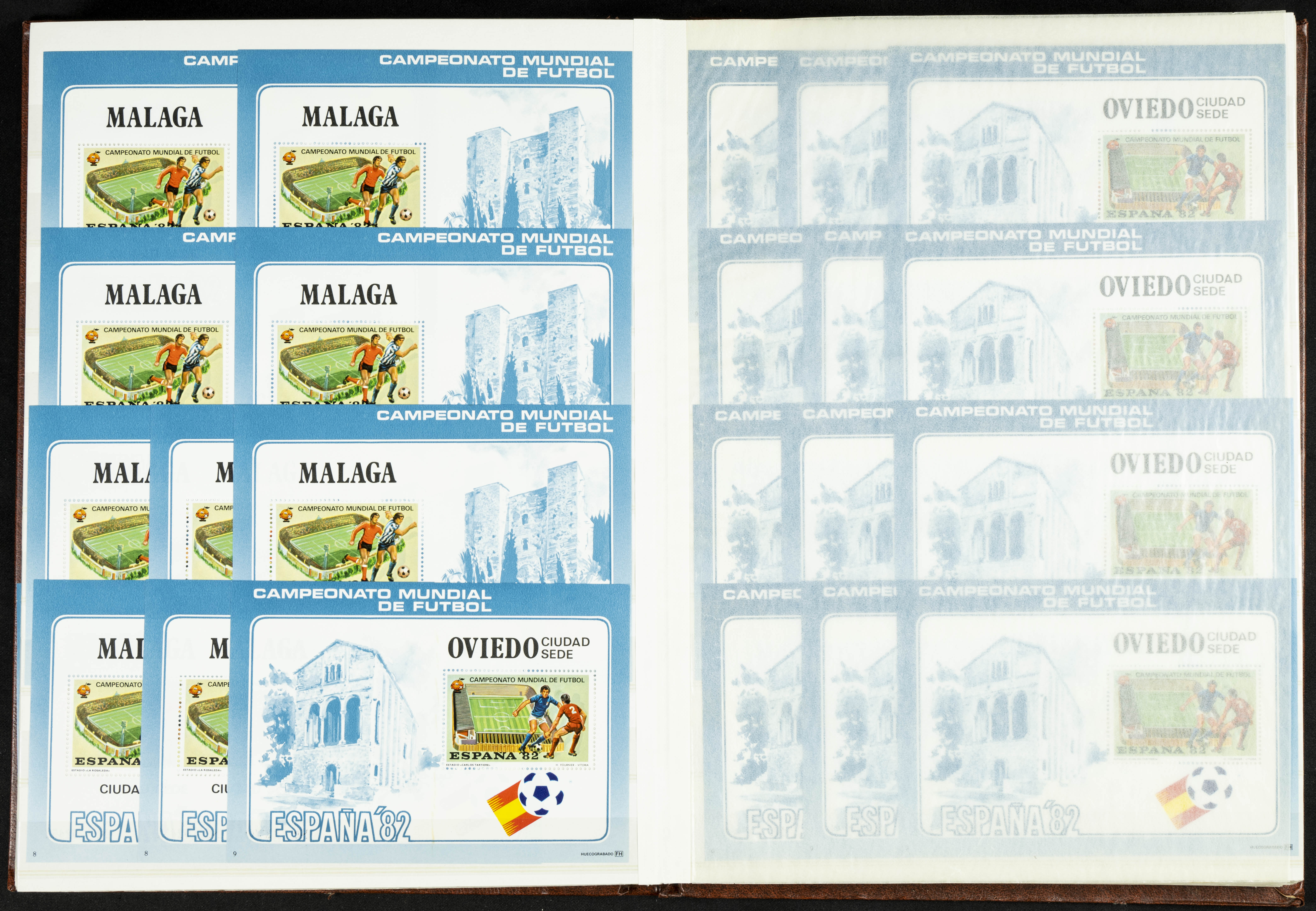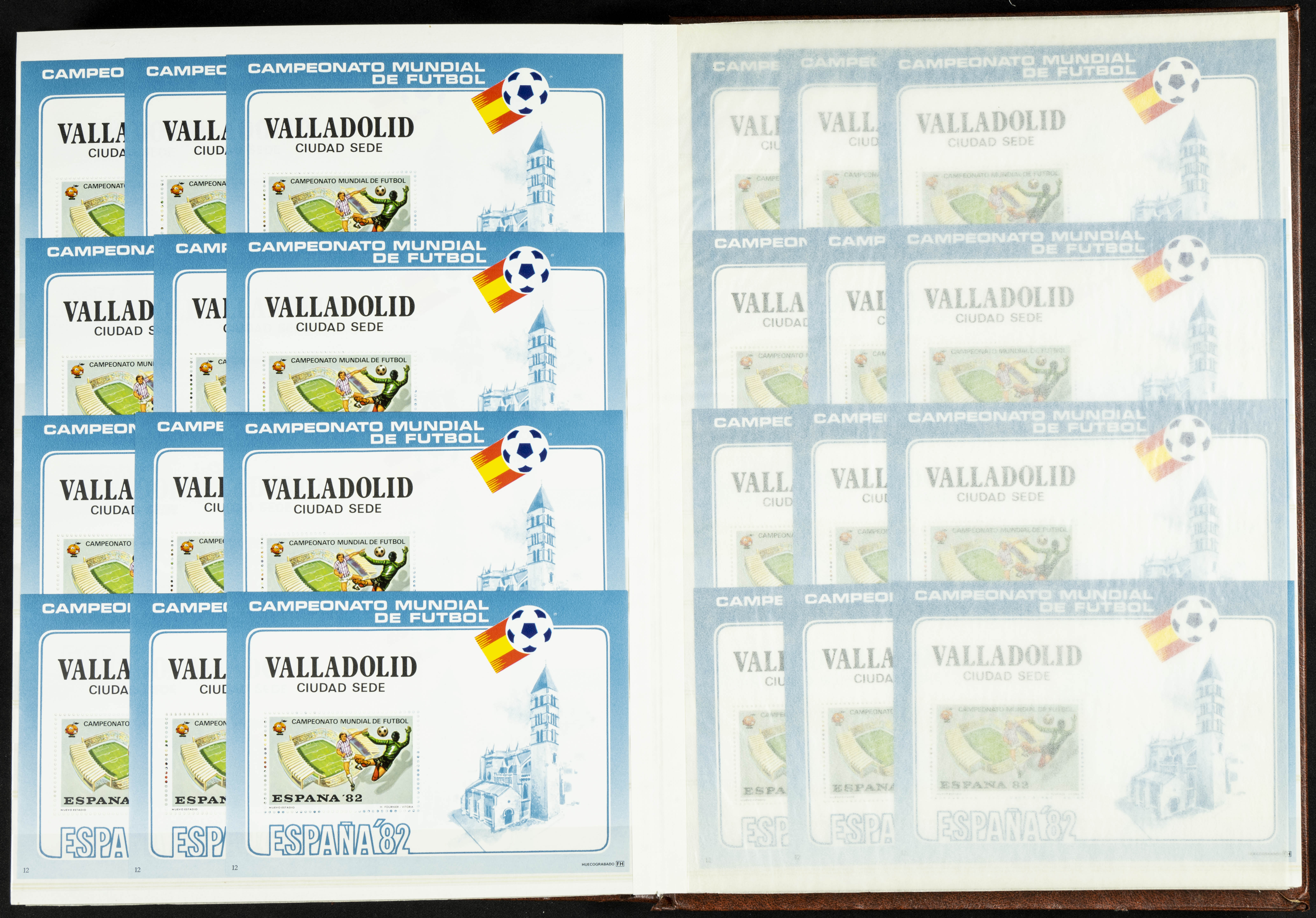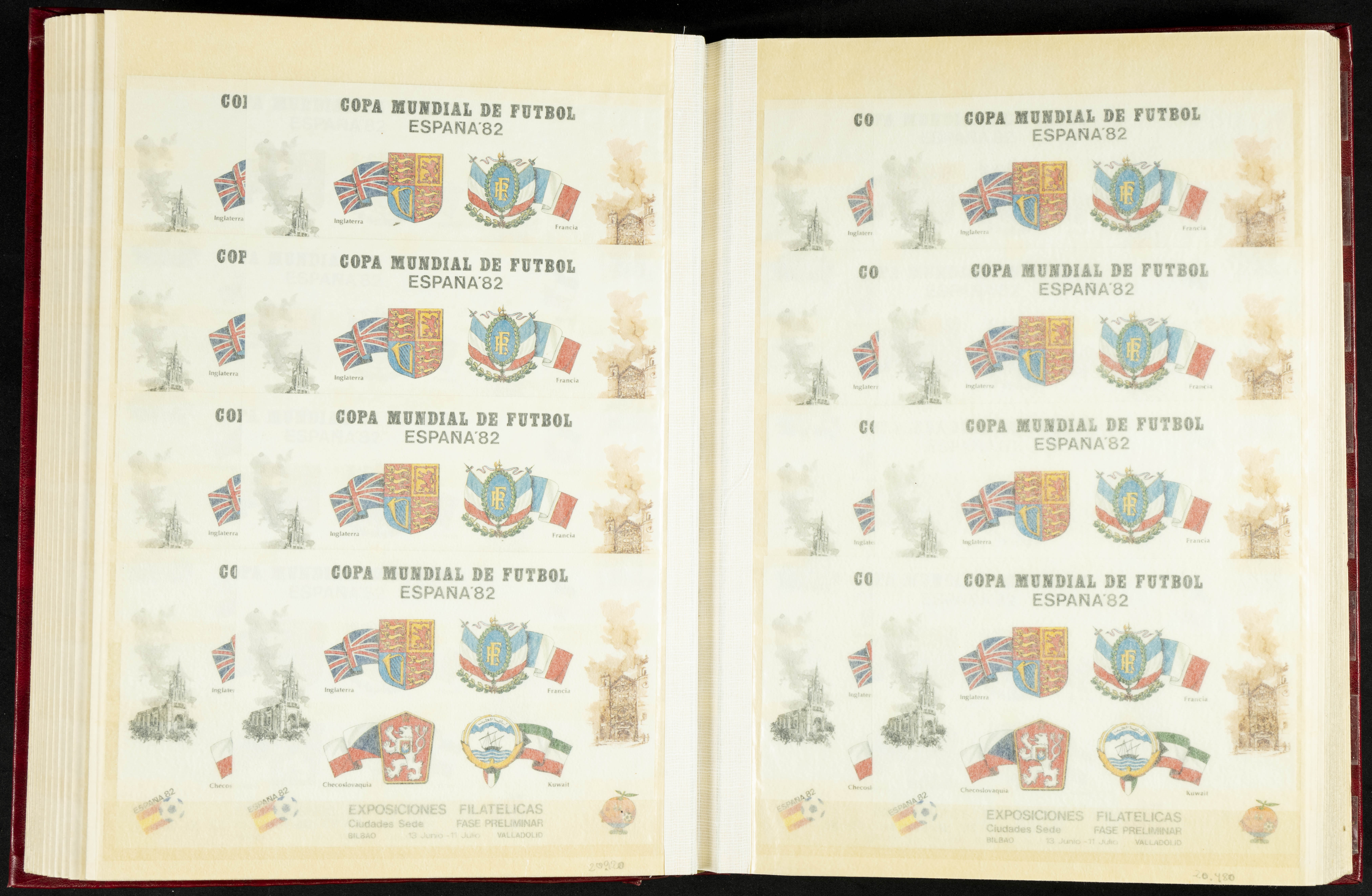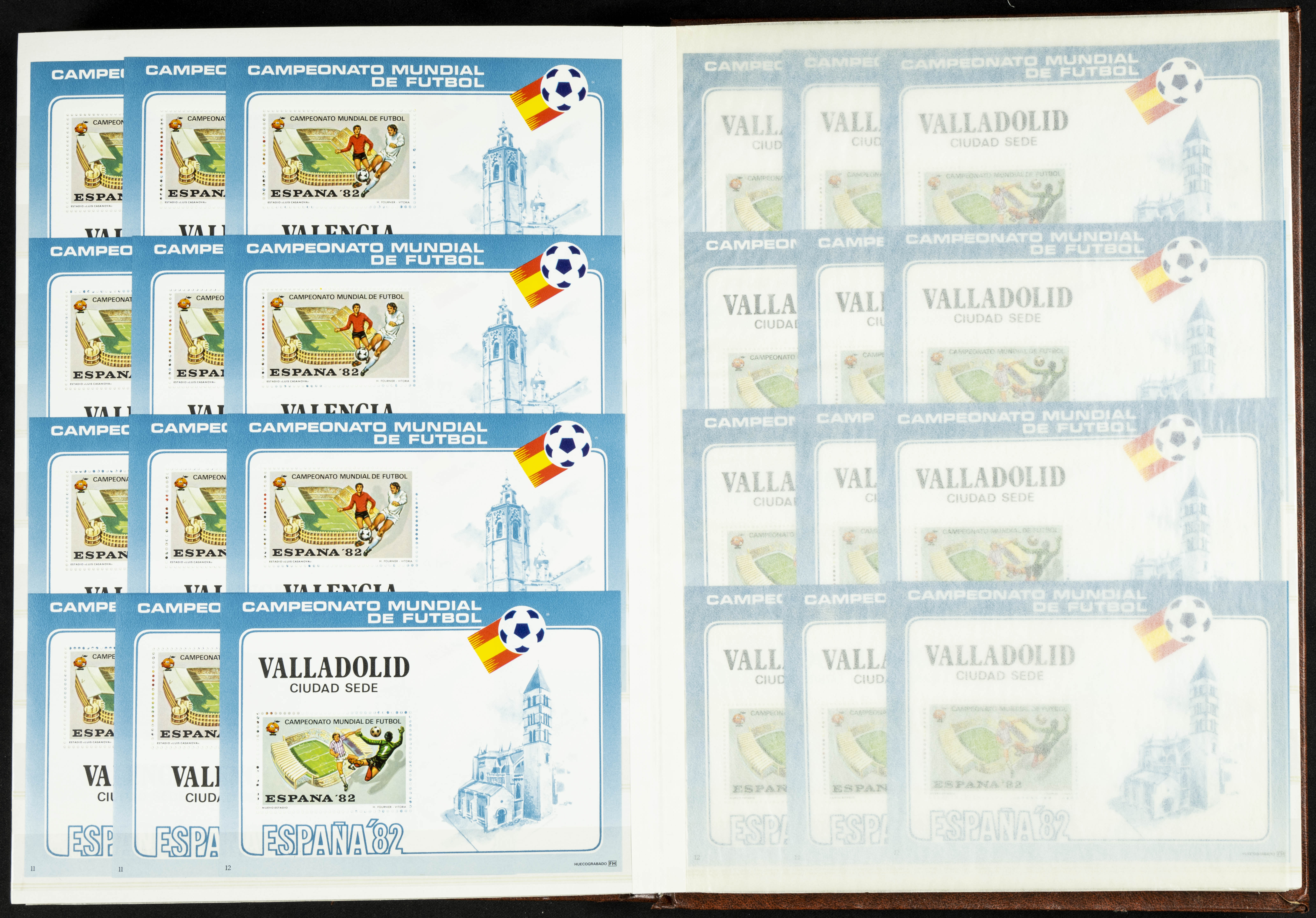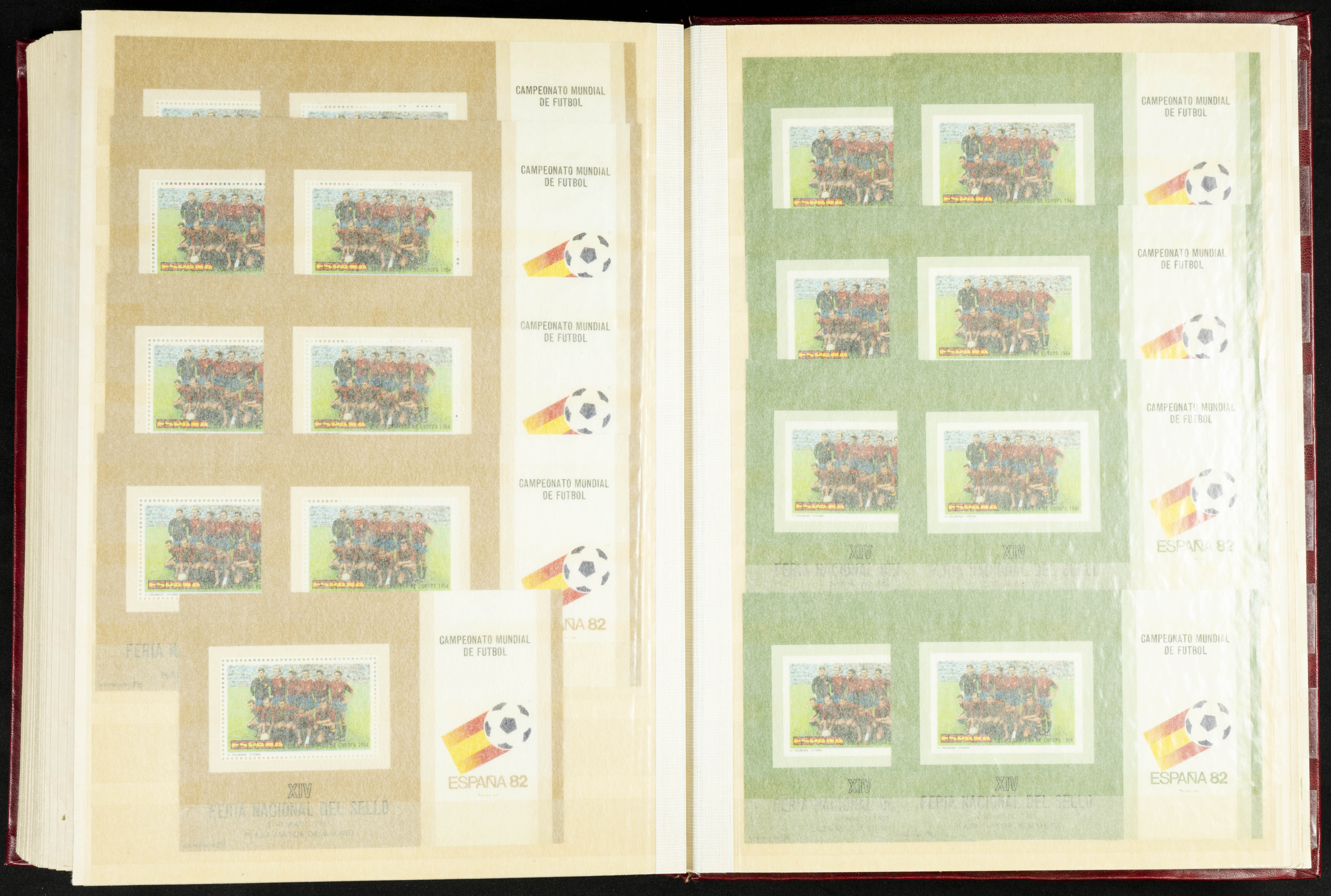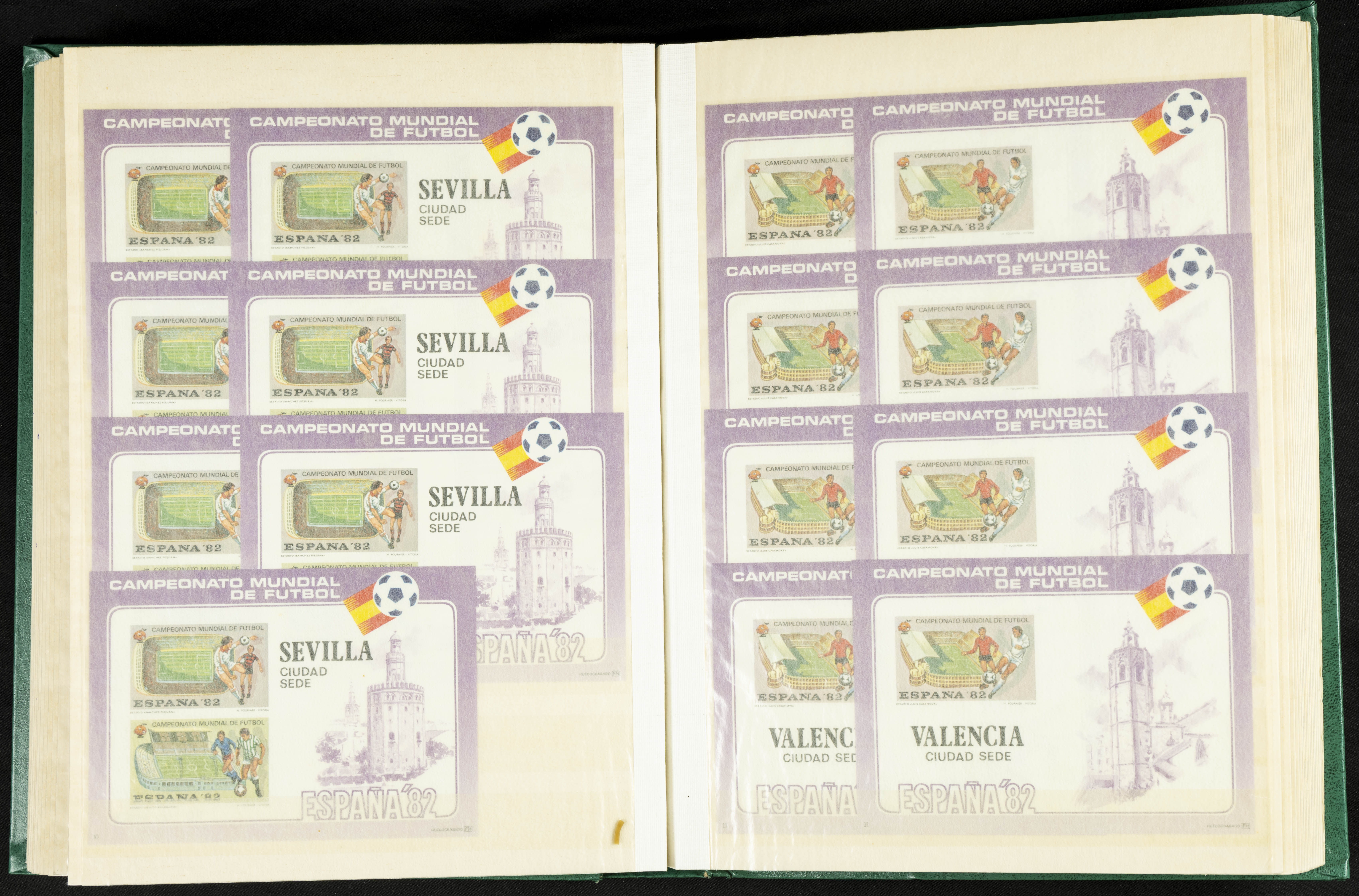 ★★/(1972ca). Conjunto de Hojas Recuerdo entre 1972 y 1982, nuevas (alguna usada) y con algunas repeticiones, incluye al menos cuarenta y cinco juegos de hojitas del Mundial 82 (Sedes) dentadas, veinticuatro juegos sin dentar, azules (dentadas), así como veinticuatro juegos sin dentar de las hojitas de las fases preliminares, entre otras. ALTISIMO VALOR DE CATALOGO. A EXAMINAR.