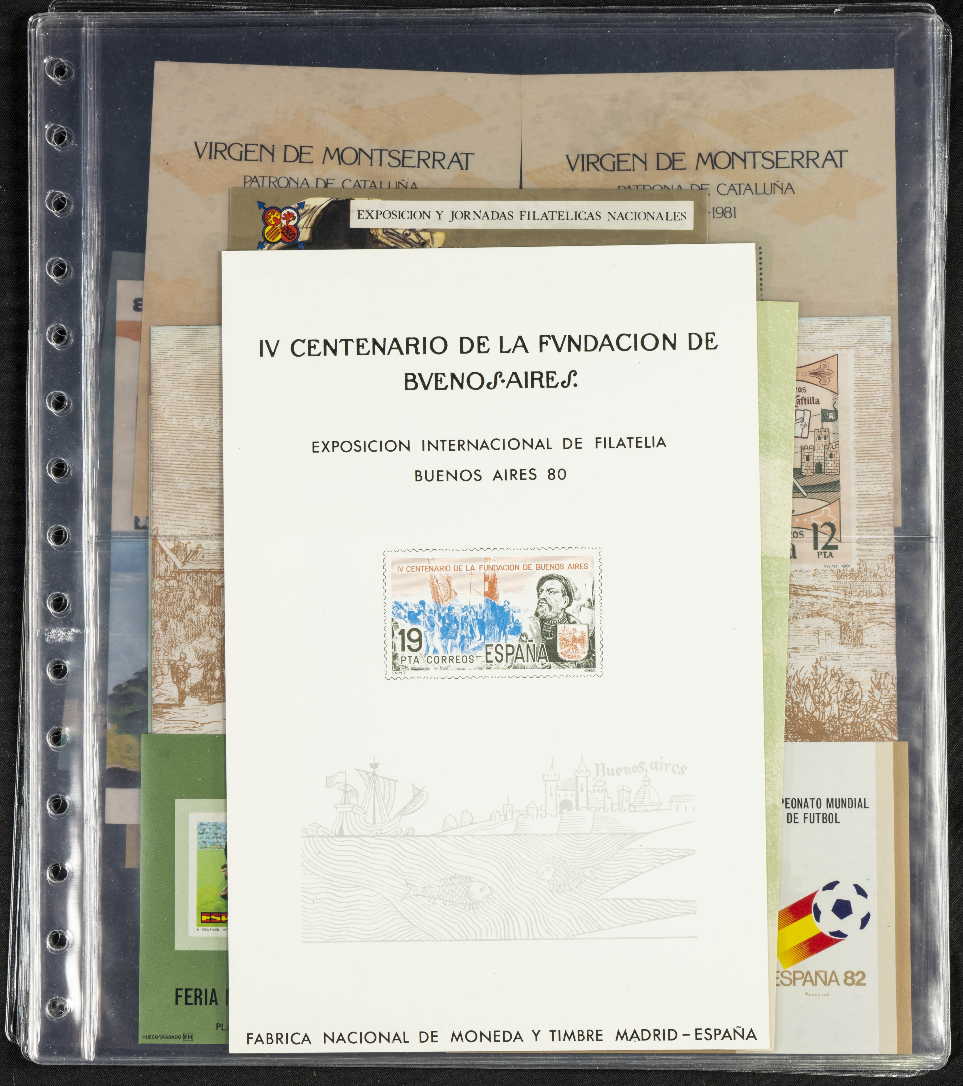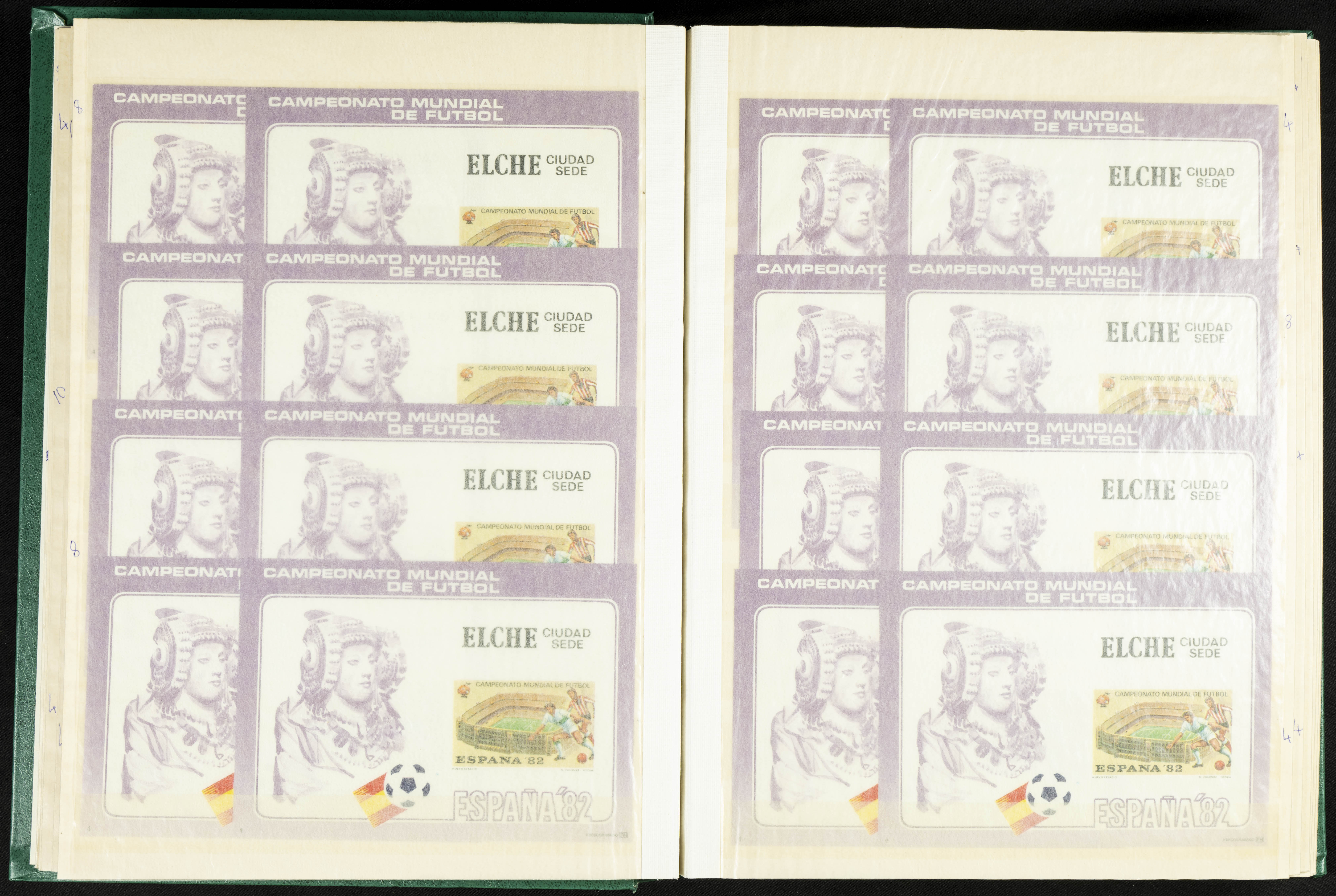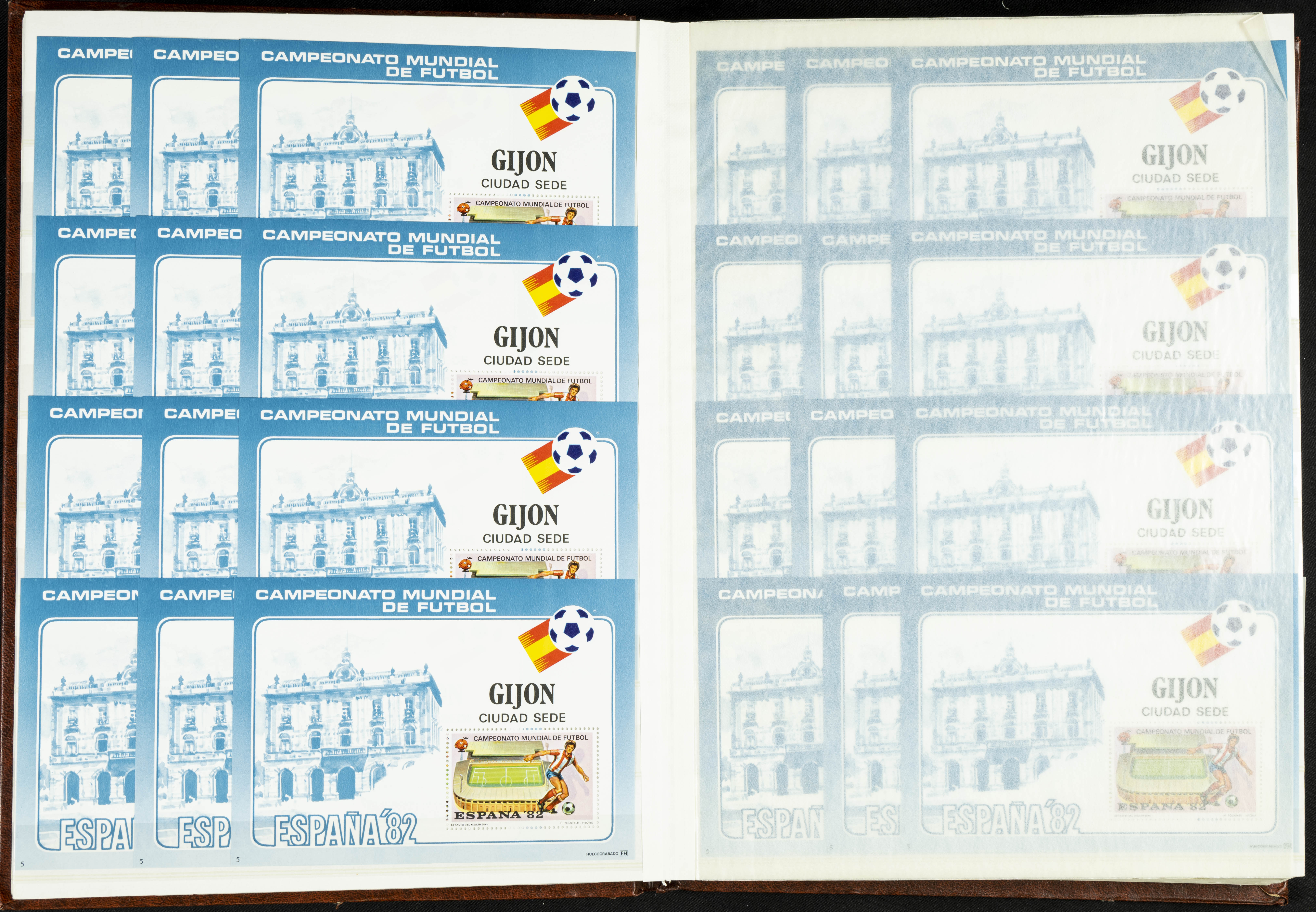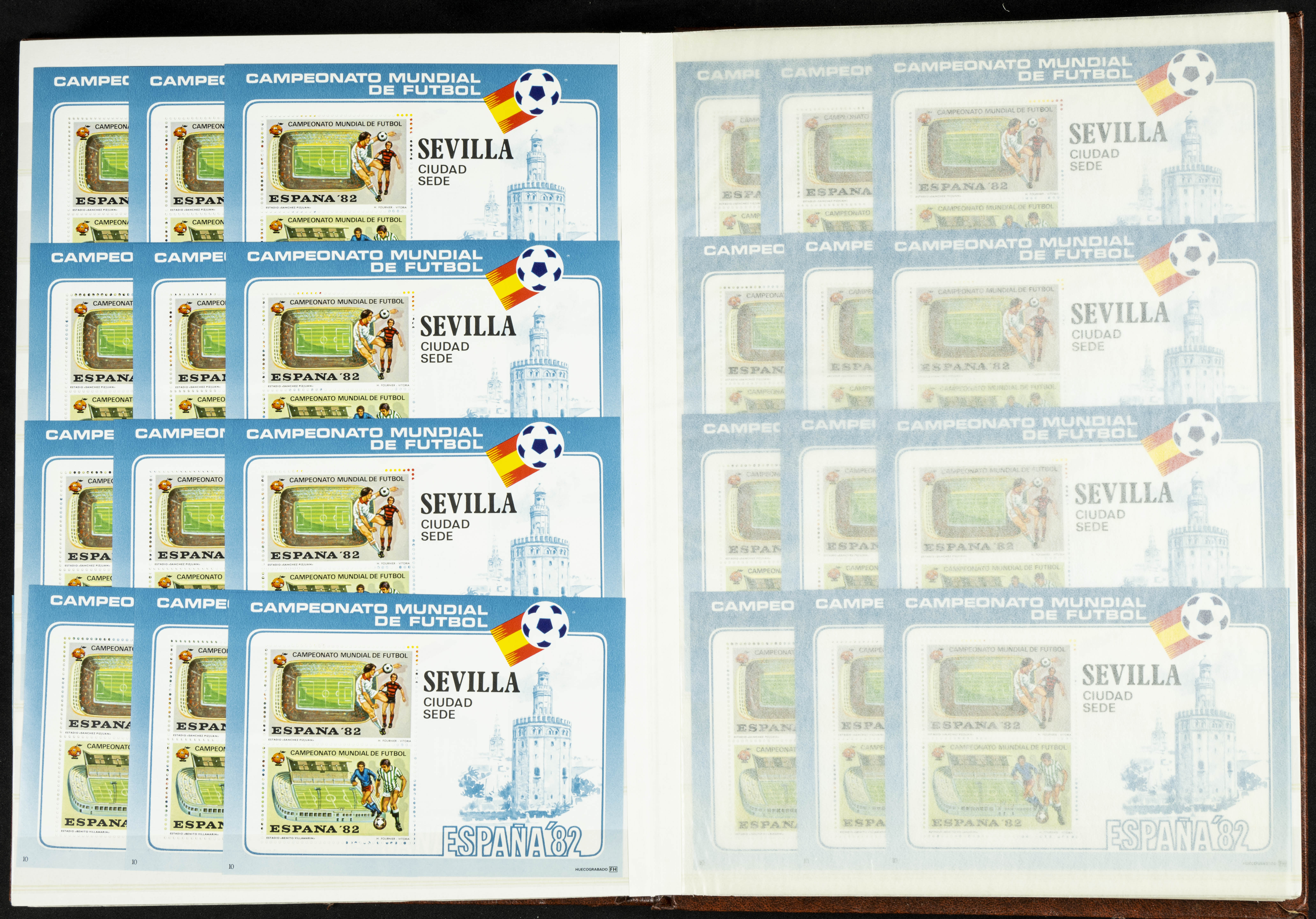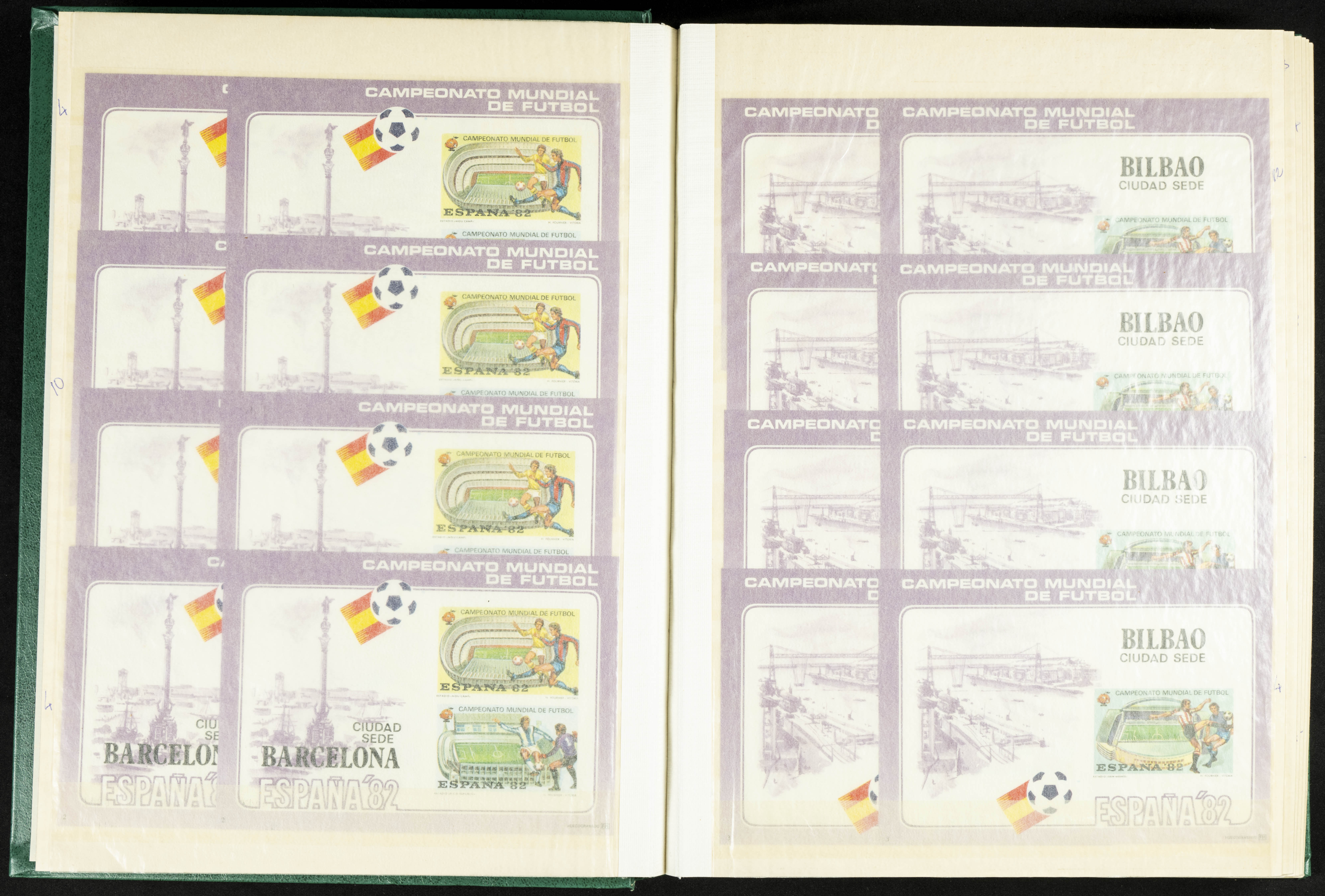 ★★/(1972ca). Conjunto de Hojas Recuerdo entre 1972 y 1982, nuevas (alguna usada) y con algunas repeticiones, incluye al menos cuarenta y cinco juegos de hojitas del Mundial 82 (Sedes) dentadas, veinticuatro juegos sin dentar, azules (dentadas), así como veinticuatro juegos sin dentar de las hojitas de las fases preliminares, entre otras. ALTISIMO VALOR DE CATALOGO. A EXAMINAR.