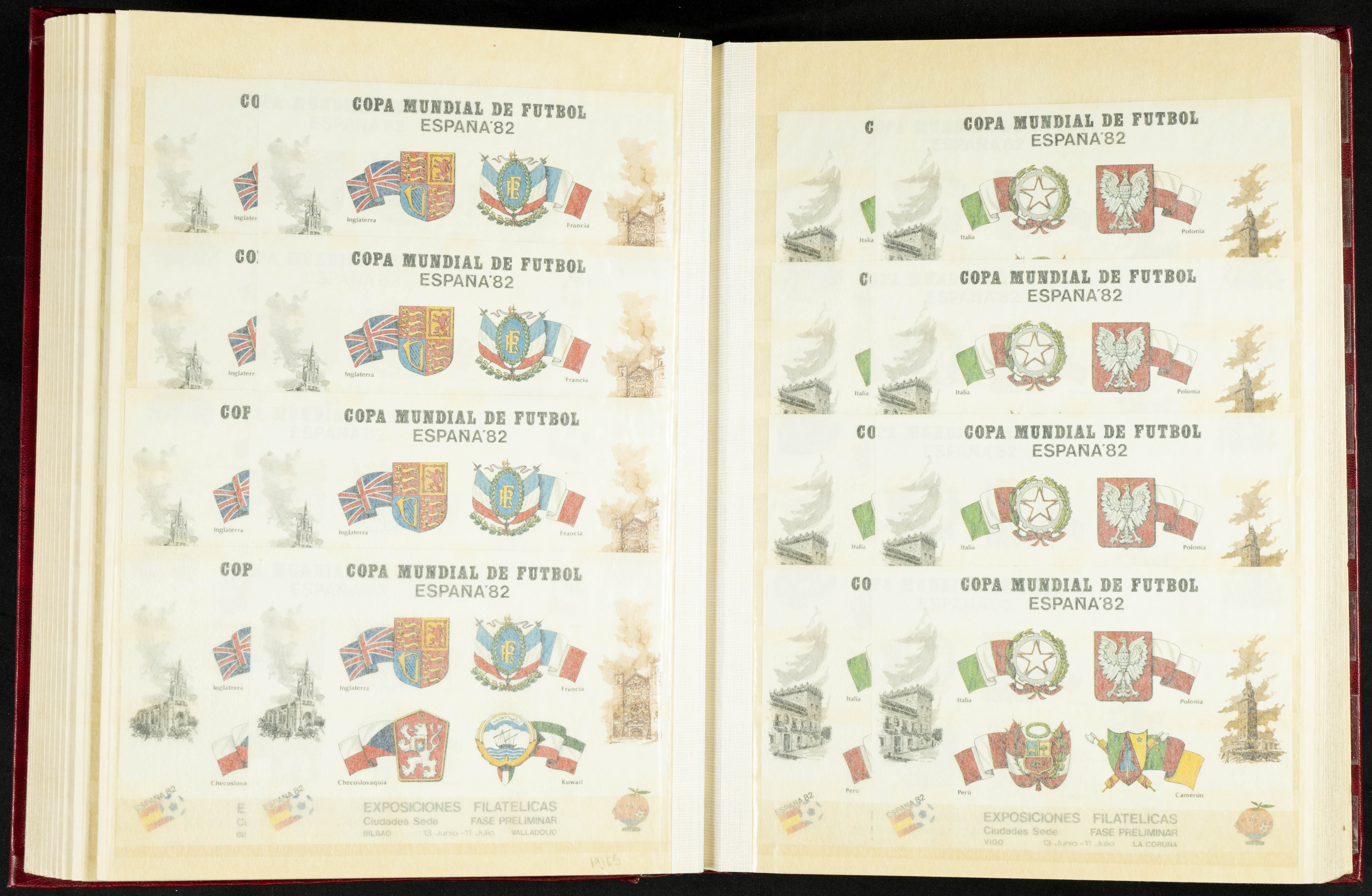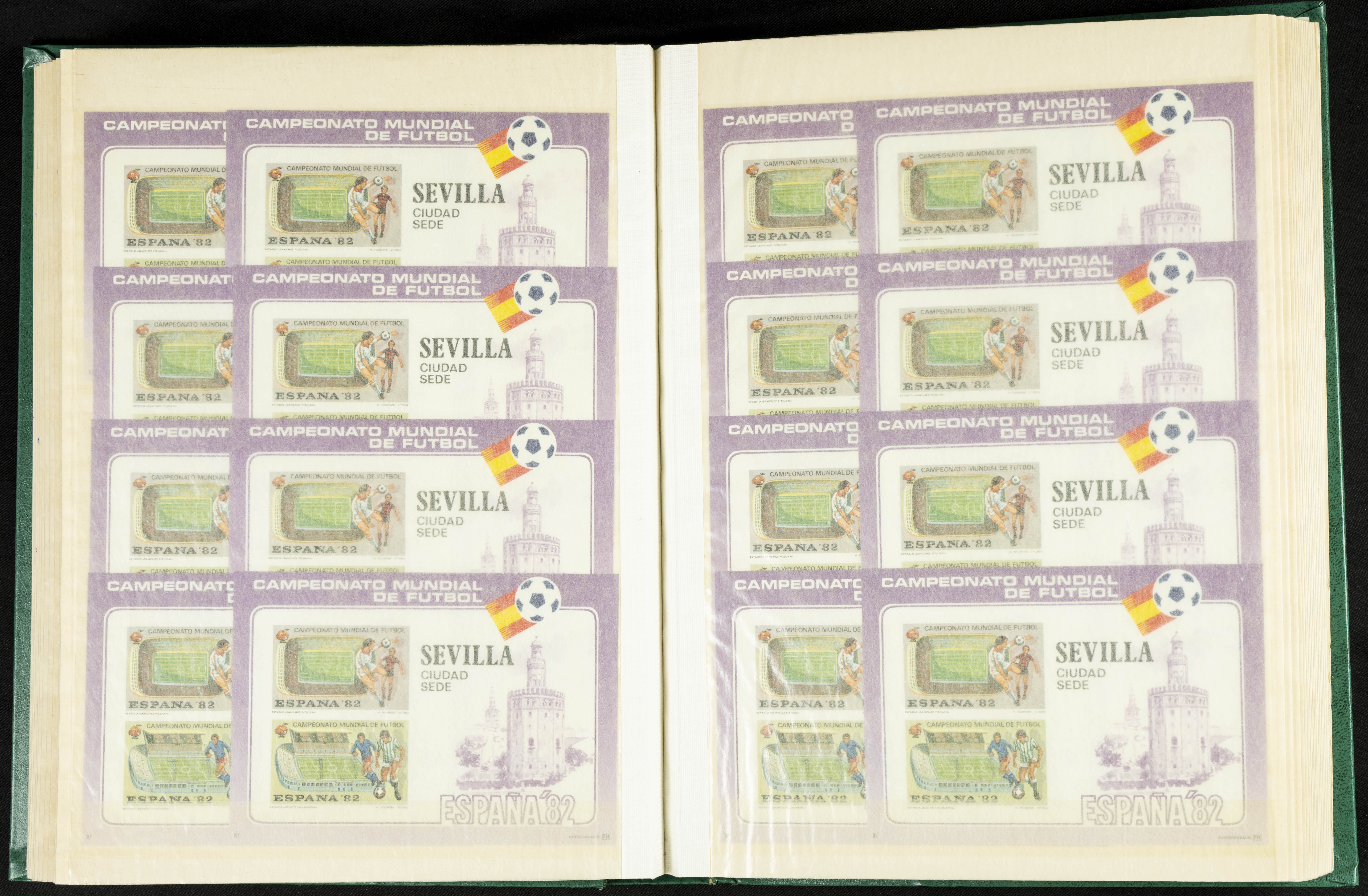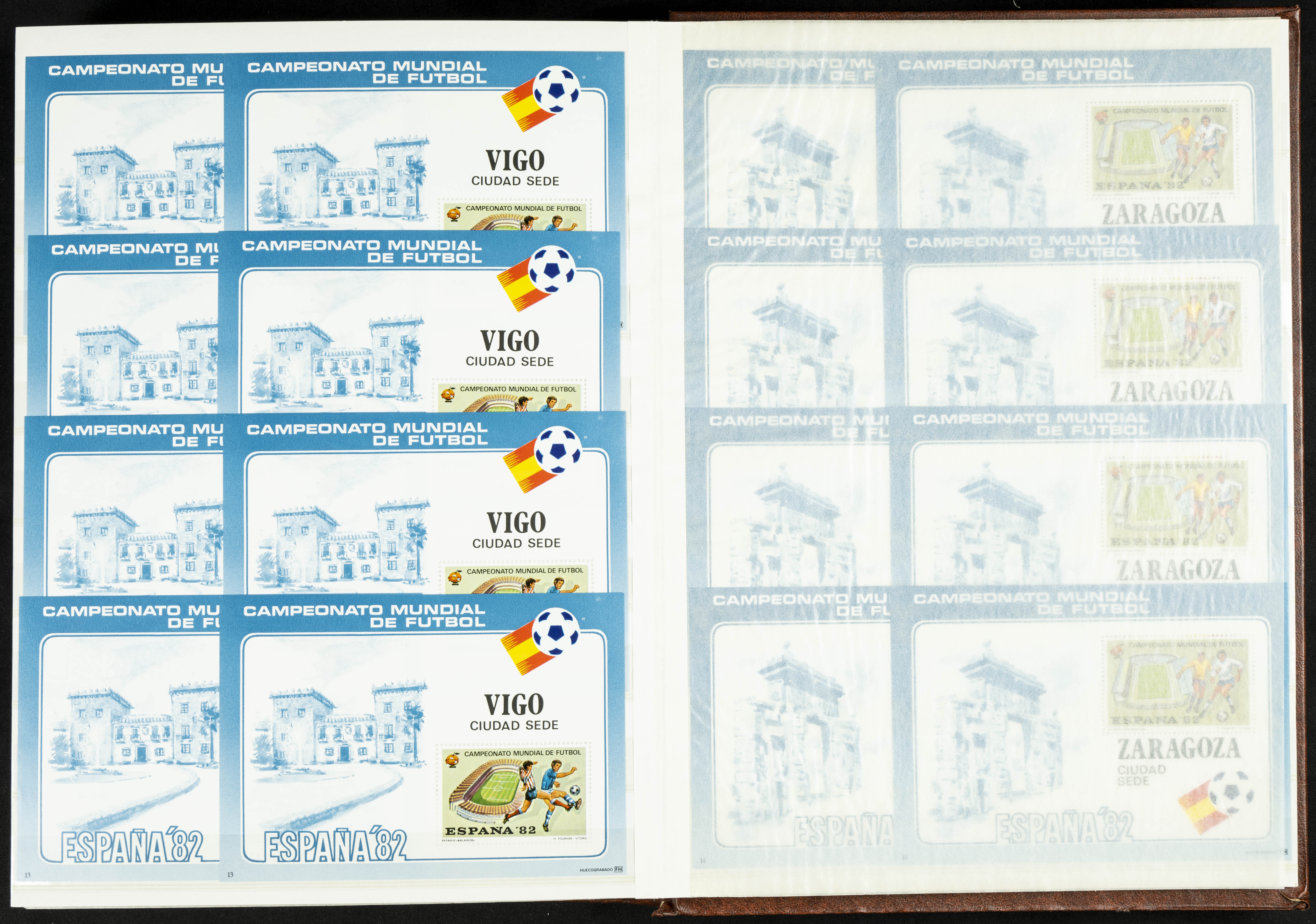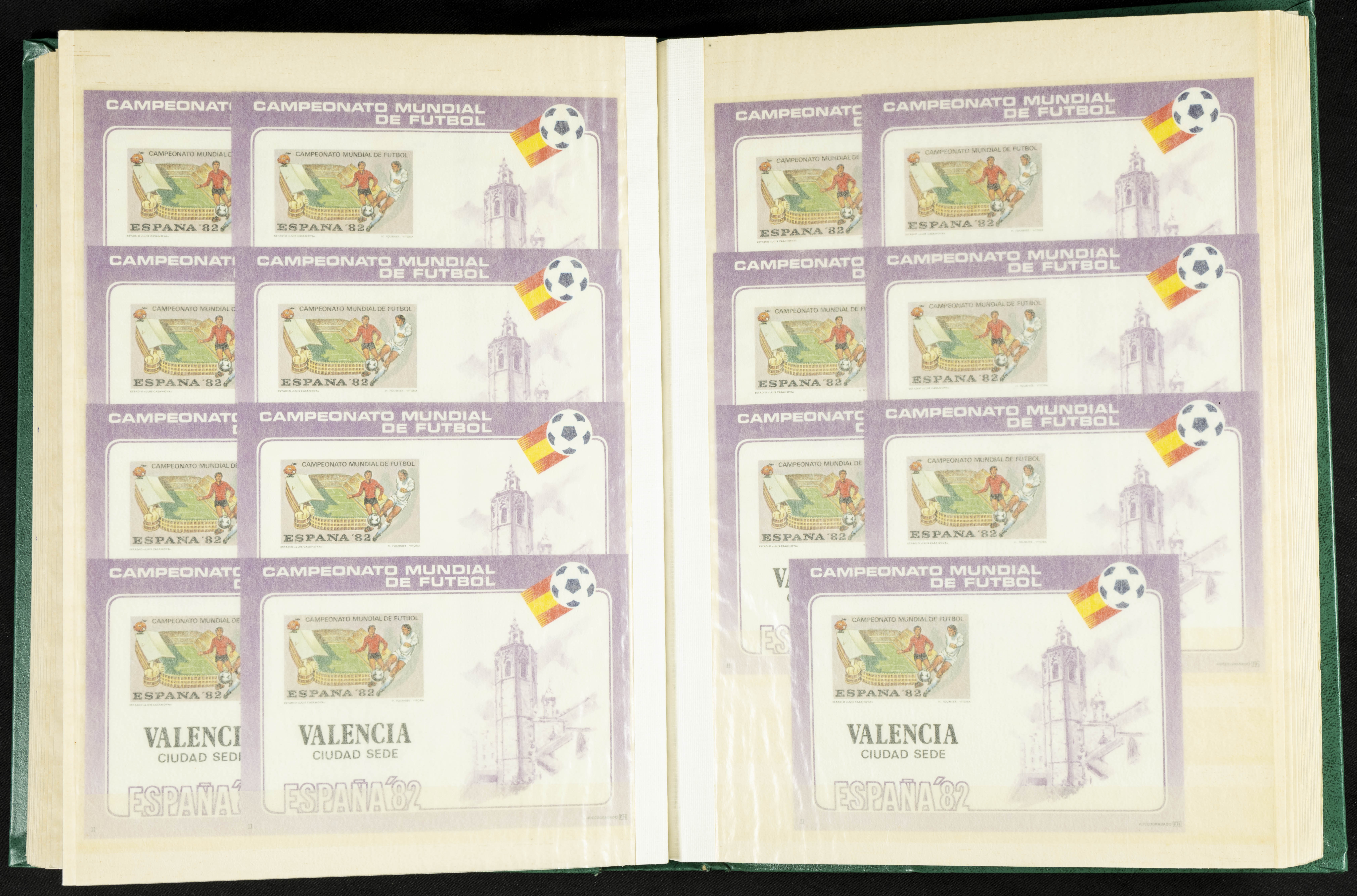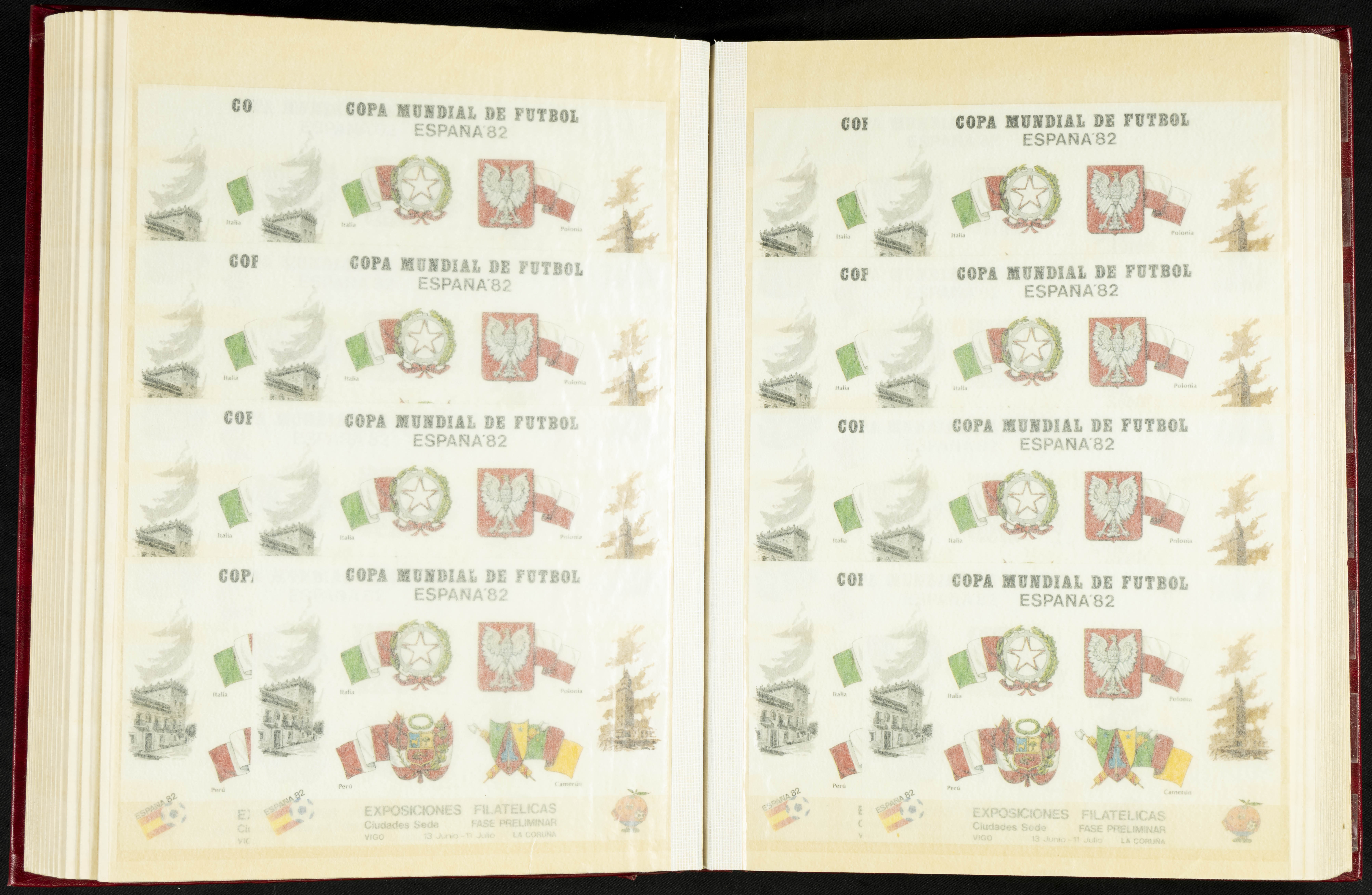 ★★/(1972ca). Conjunto de Hojas Recuerdo entre 1972 y 1982, nuevas (alguna usada) y con algunas repeticiones, incluye al menos cuarenta y cinco juegos de hojitas del Mundial 82 (Sedes) dentadas, veinticuatro juegos sin dentar, azules (dentadas), así como veinticuatro juegos sin dentar de las hojitas de las fases preliminares, entre otras. ALTISIMO VALOR DE CATALOGO. A EXAMINAR.