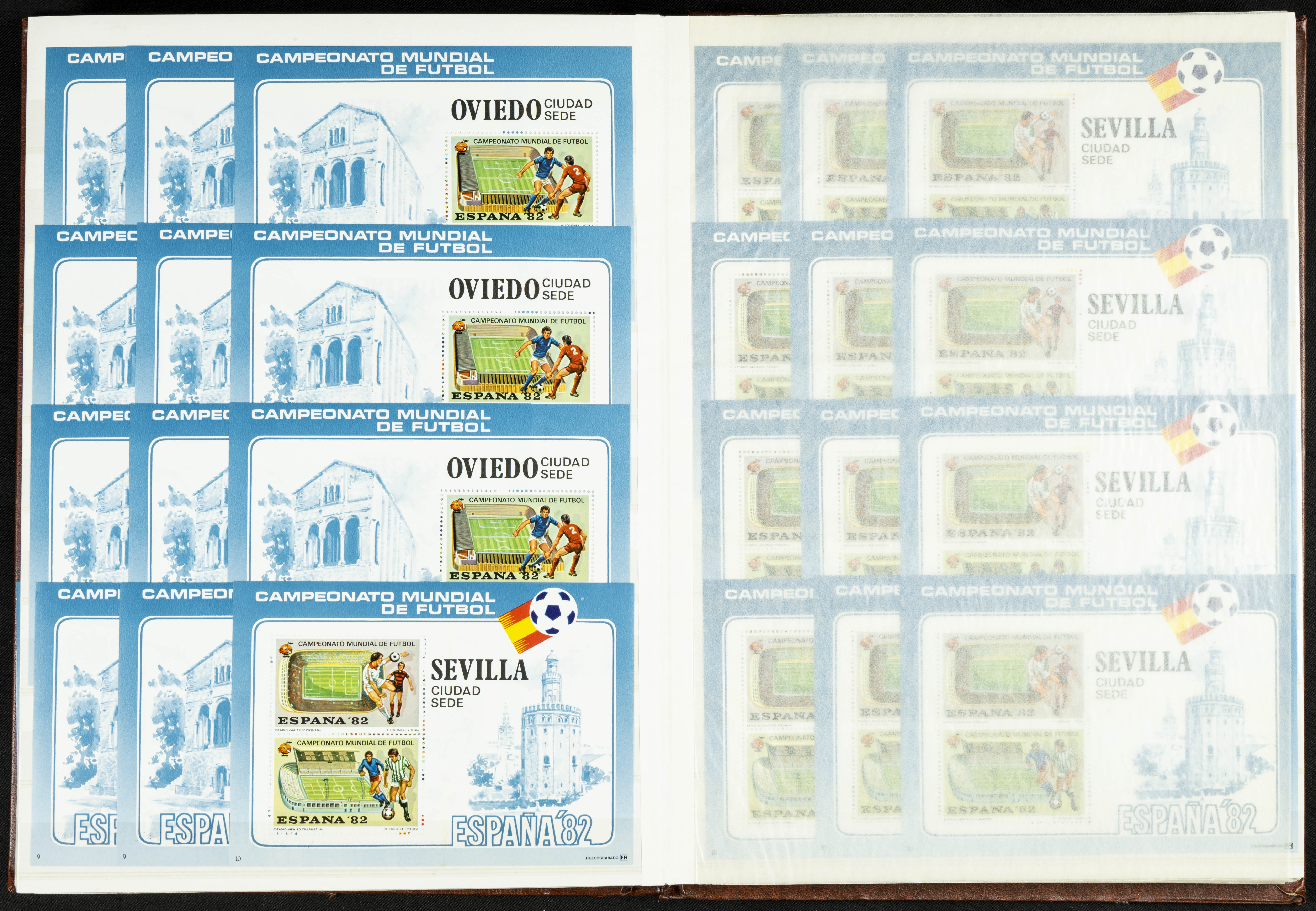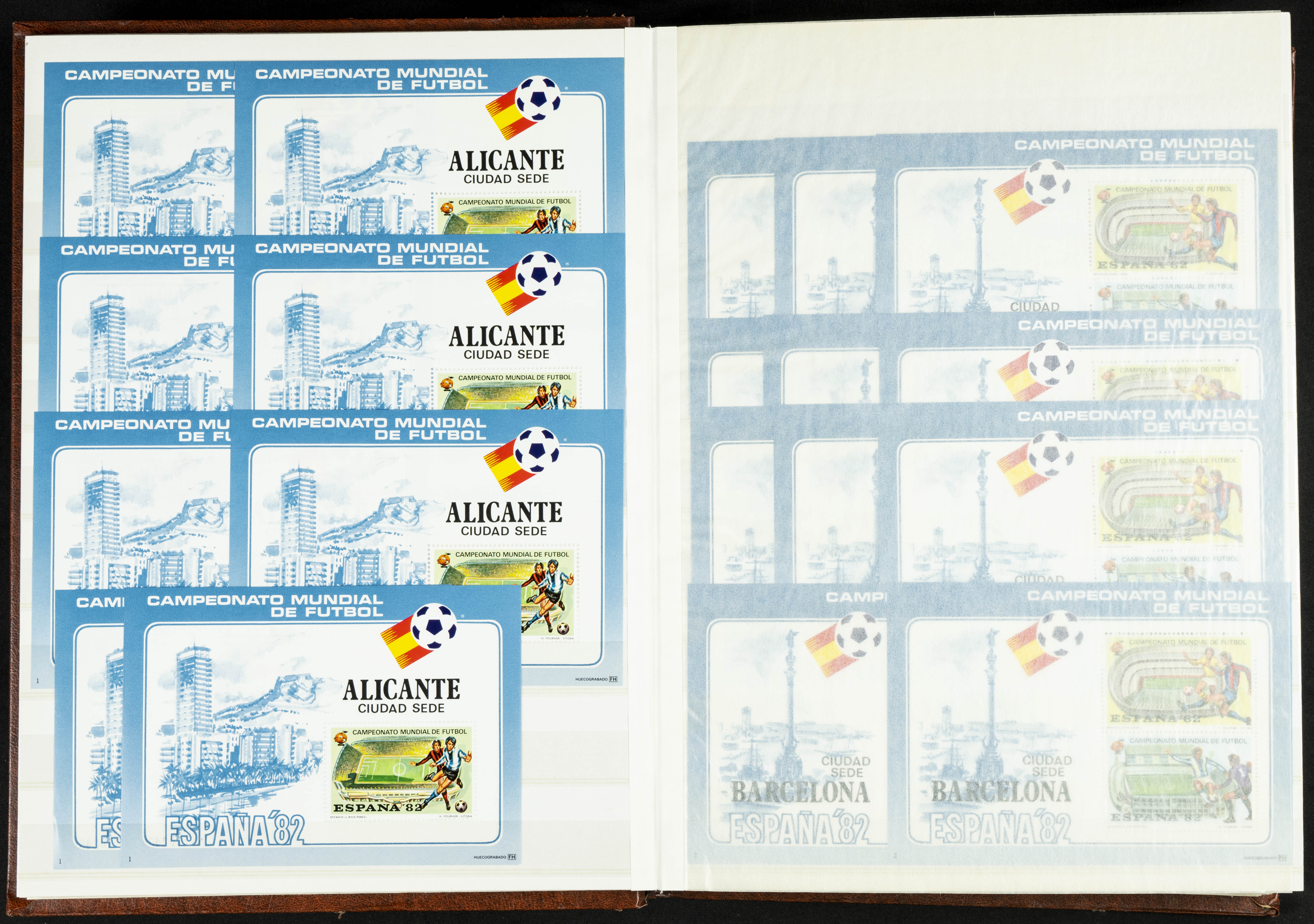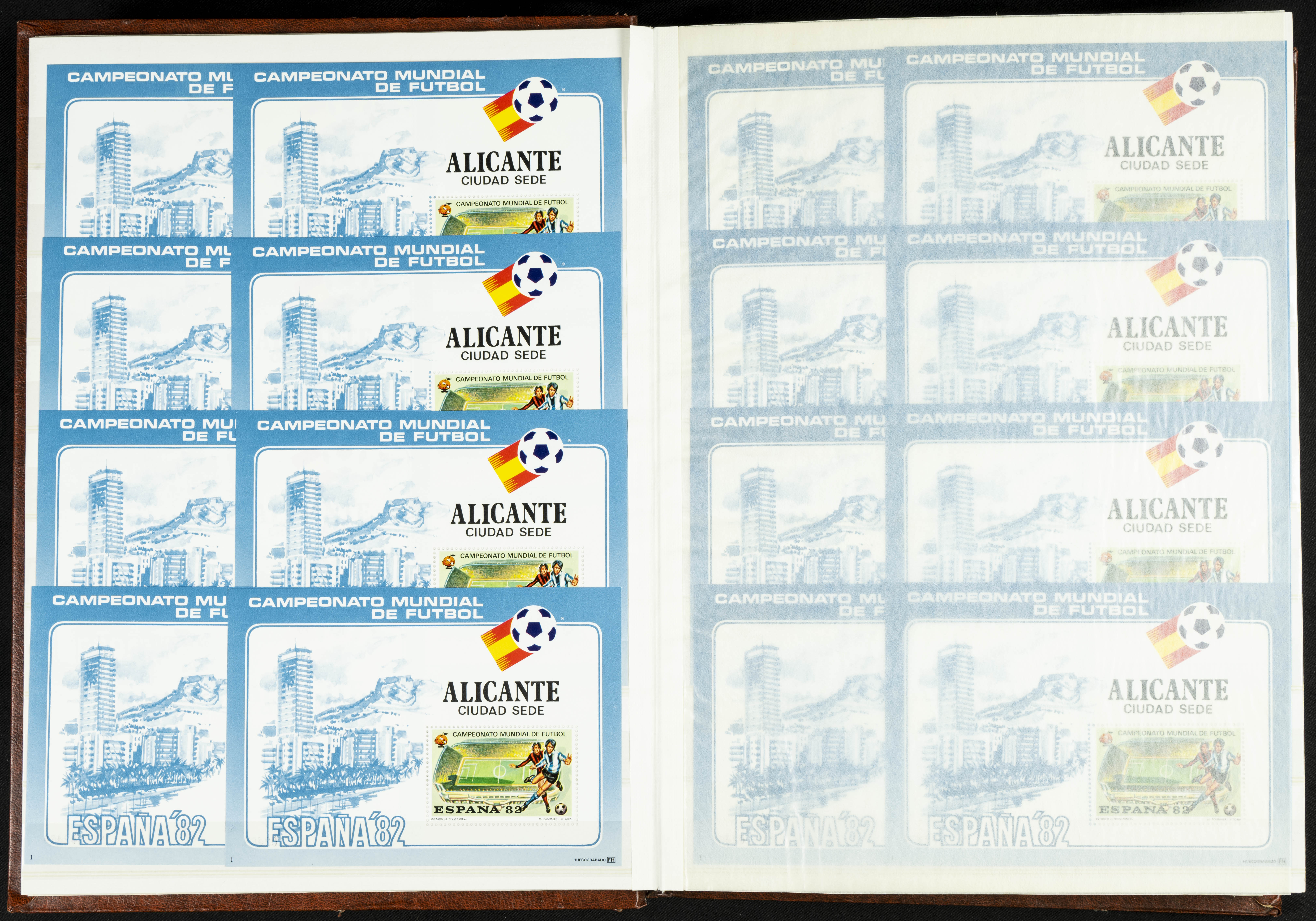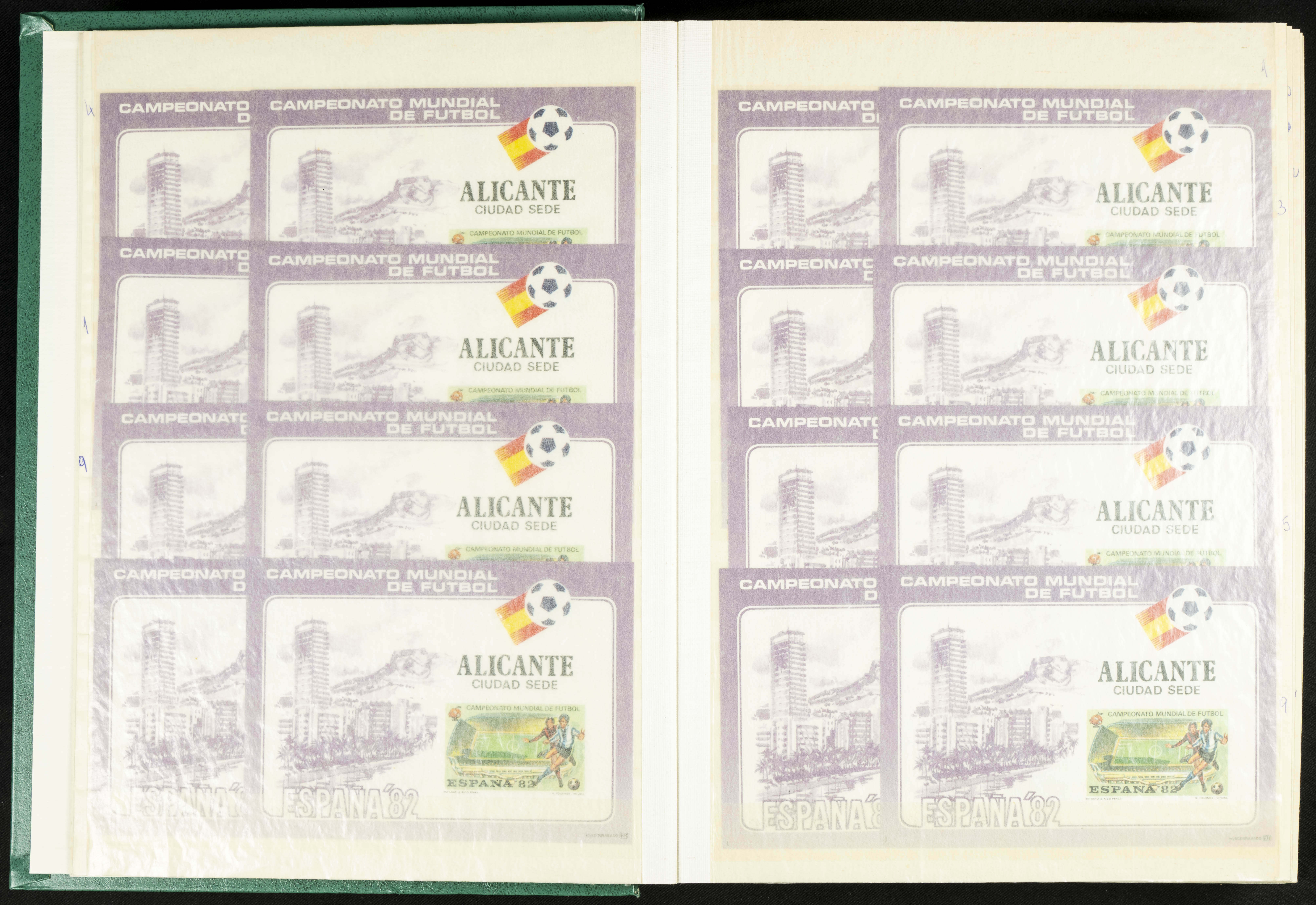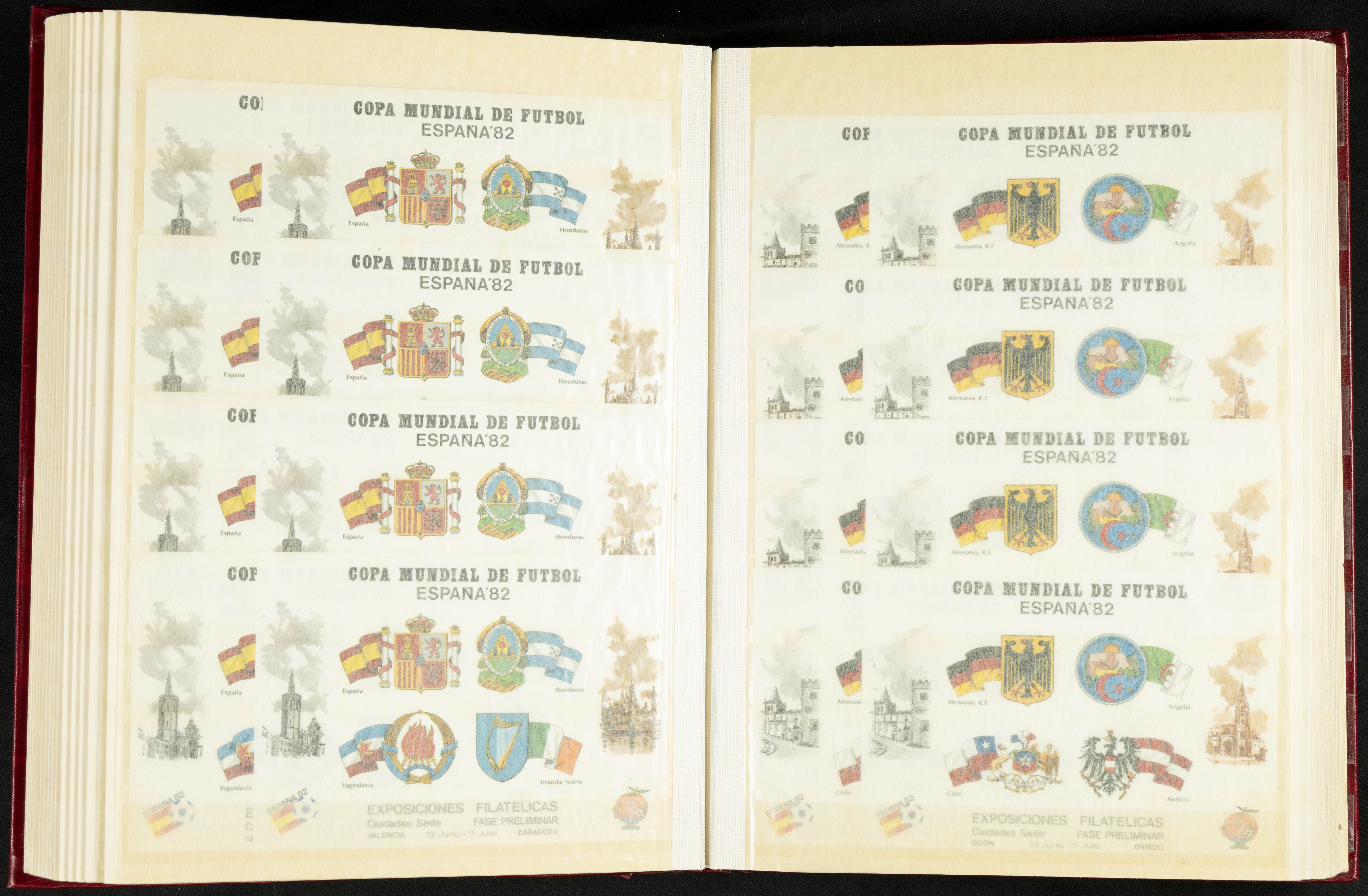 ★★/(1972ca). Conjunto de Hojas Recuerdo entre 1972 y 1982, nuevas (alguna usada) y con algunas repeticiones, incluye al menos cuarenta y cinco juegos de hojitas del Mundial 82 (Sedes) dentadas, veinticuatro juegos sin dentar, azules (dentadas), así como veinticuatro juegos sin dentar de las hojitas de las fases preliminares, entre otras. ALTISIMO VALOR DE CATALOGO. A EXAMINAR.