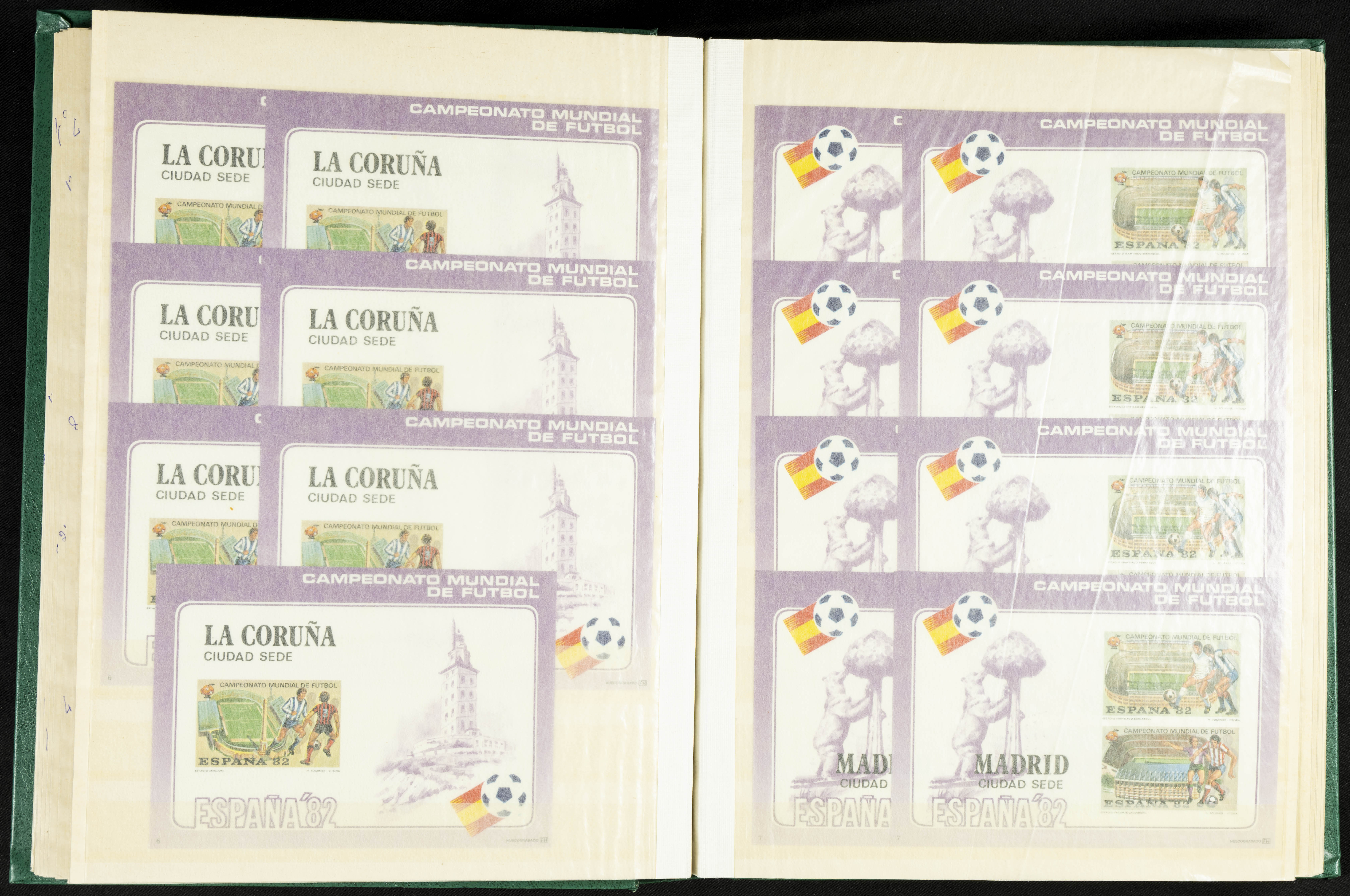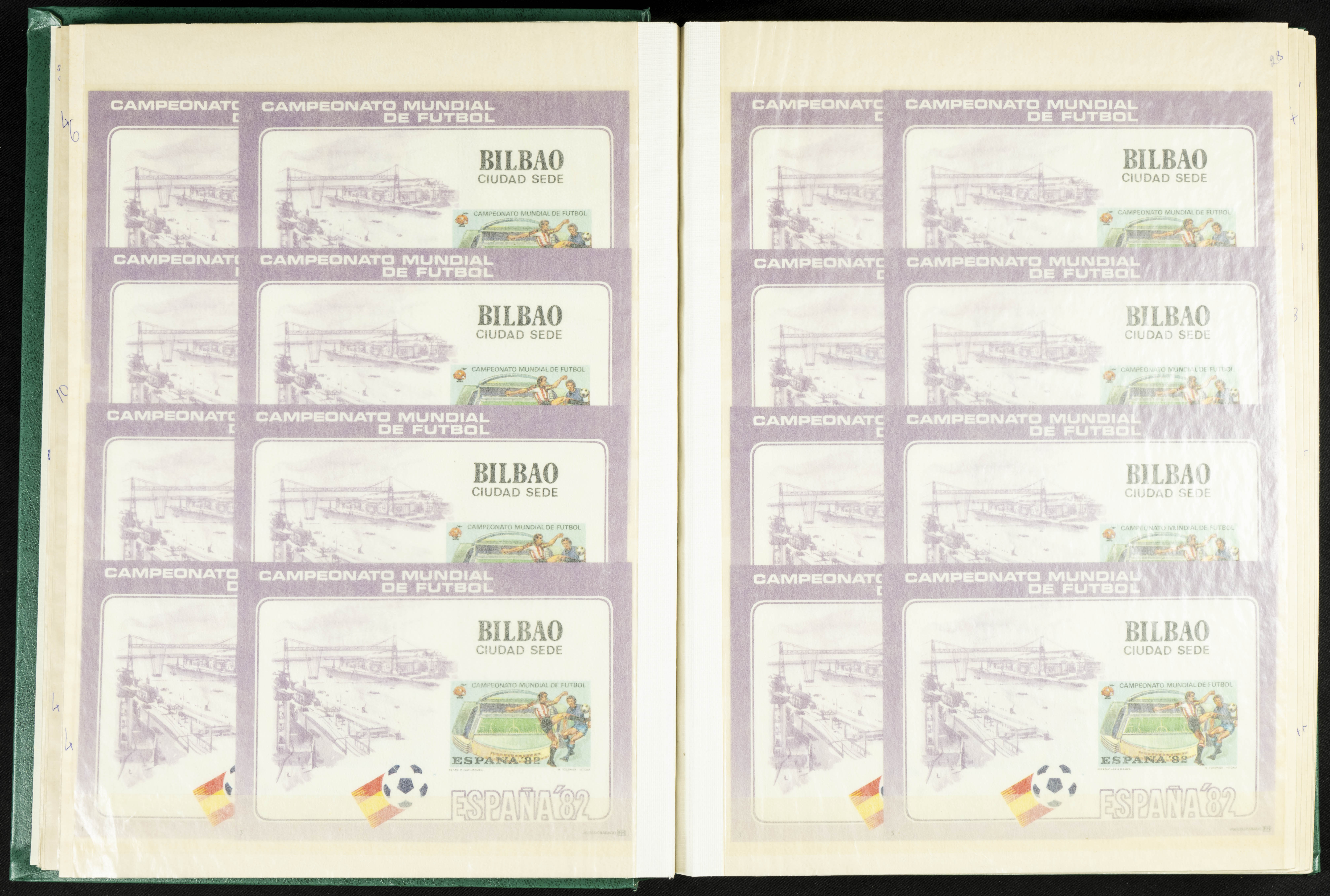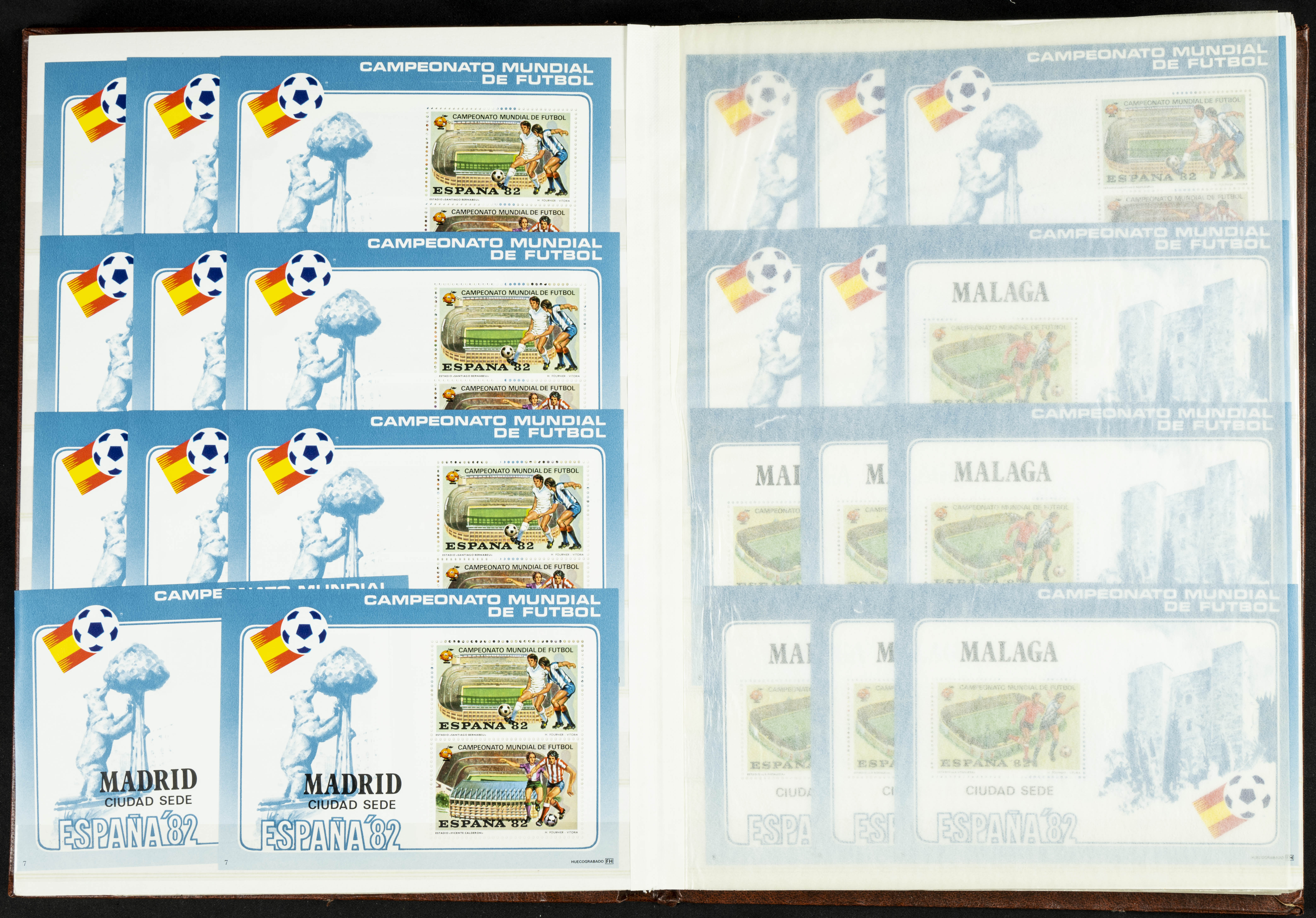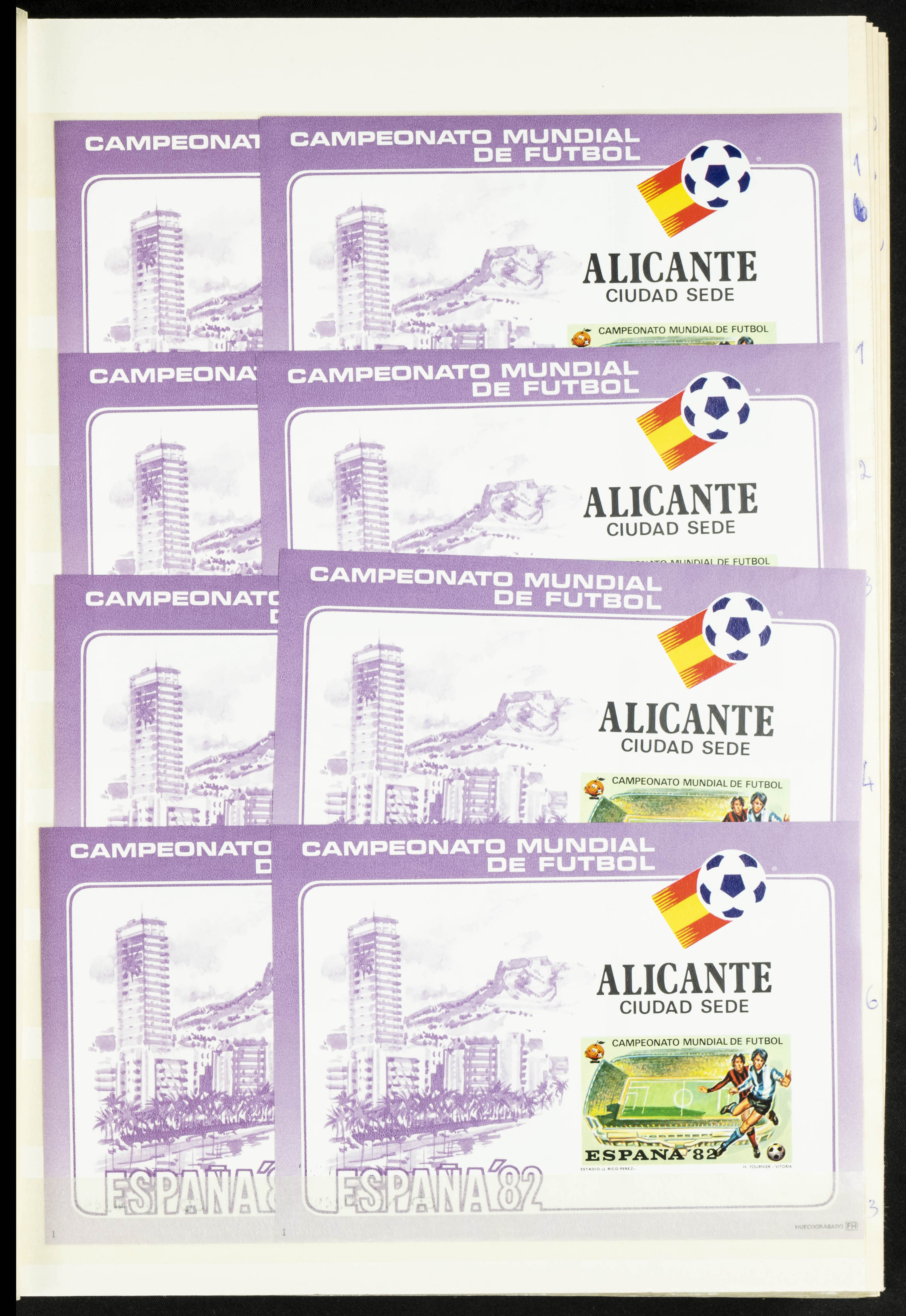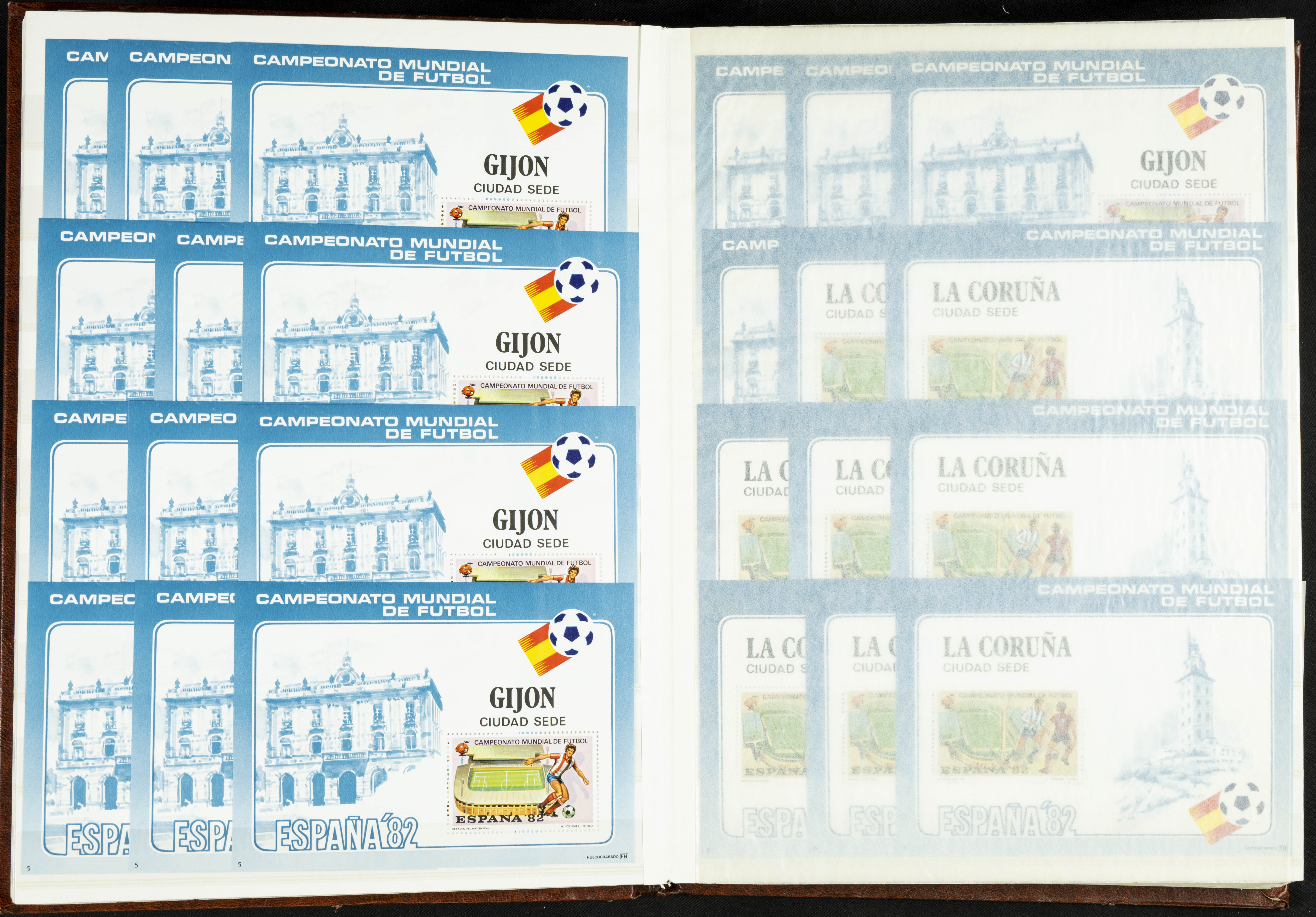 ★★/(1972ca). Conjunto de Hojas Recuerdo entre 1972 y 1982, nuevas (alguna usada) y con algunas repeticiones, incluye al menos cuarenta y cinco juegos de hojitas del Mundial 82 (Sedes) dentadas, veinticuatro juegos sin dentar, azules (dentadas), así como veinticuatro juegos sin dentar de las hojitas de las fases preliminares, entre otras. ALTISIMO VALOR DE CATALOGO. A EXAMINAR.