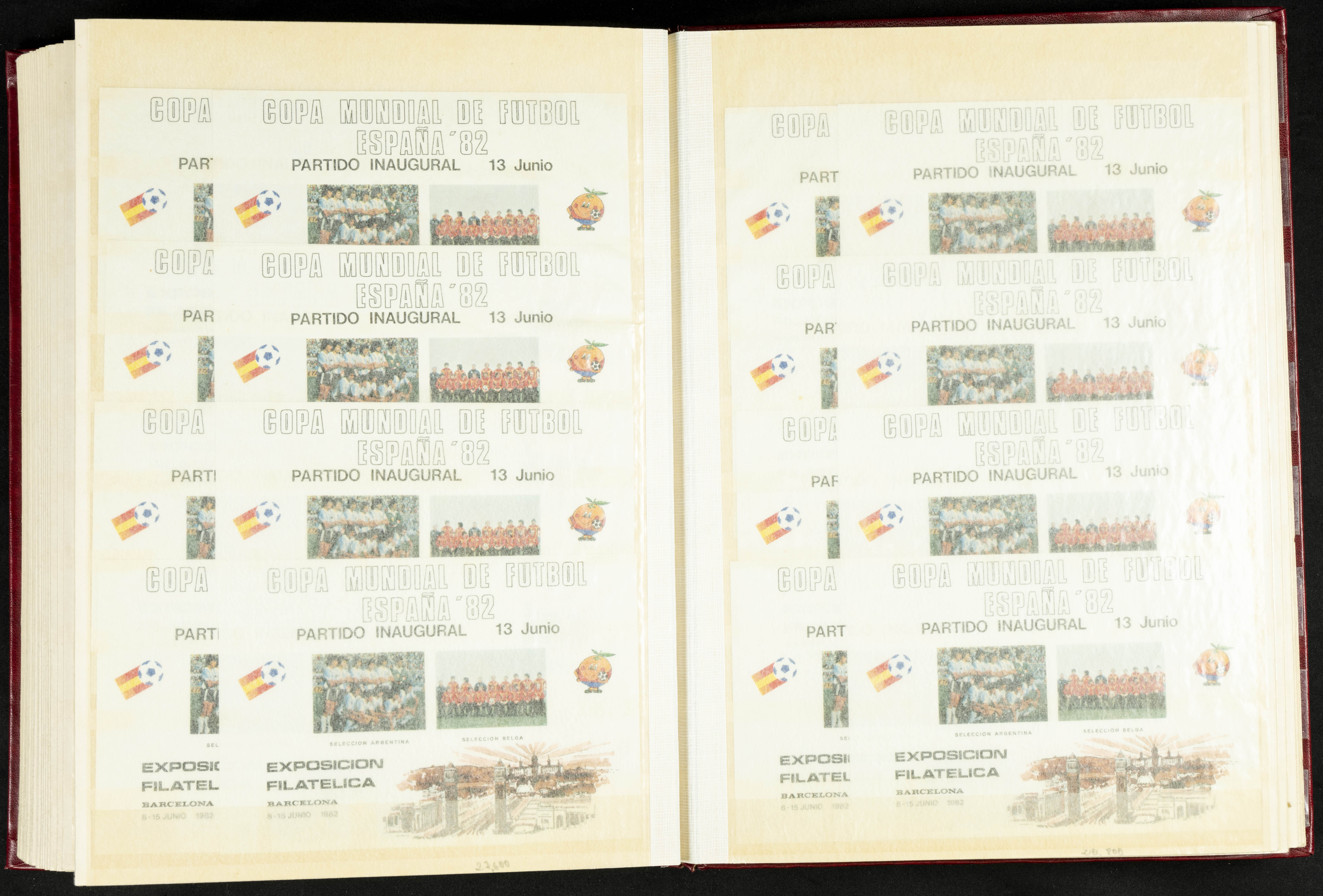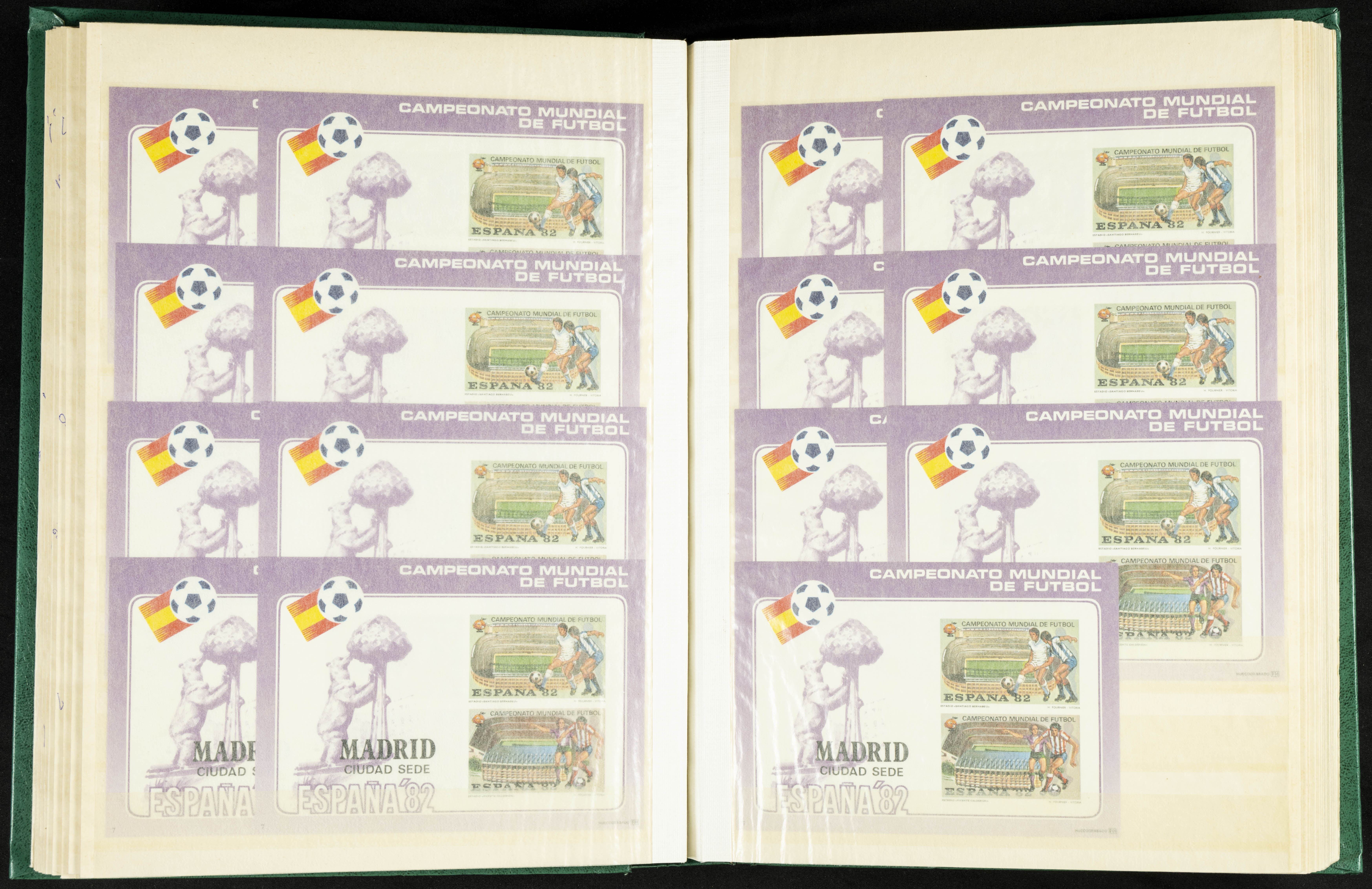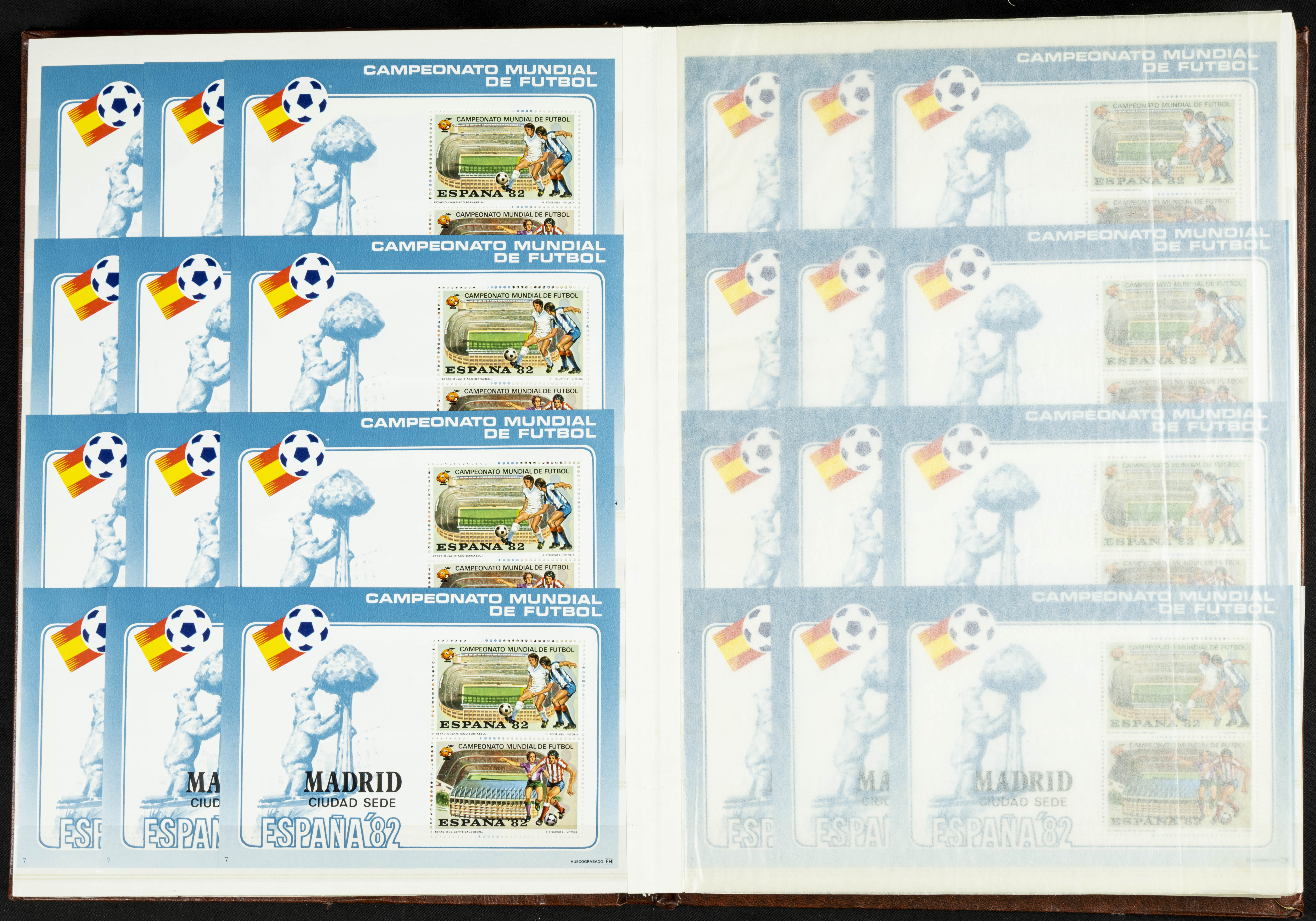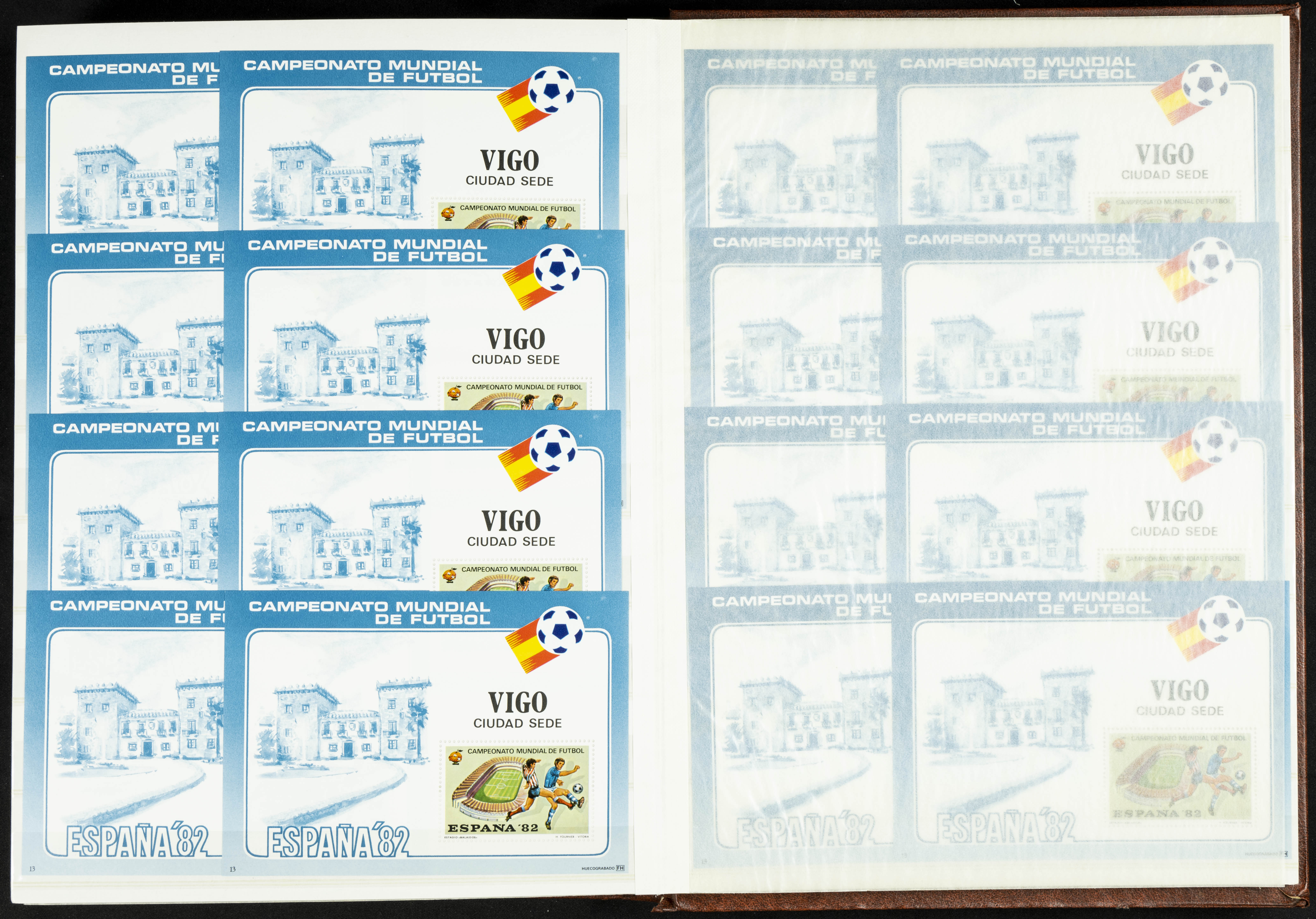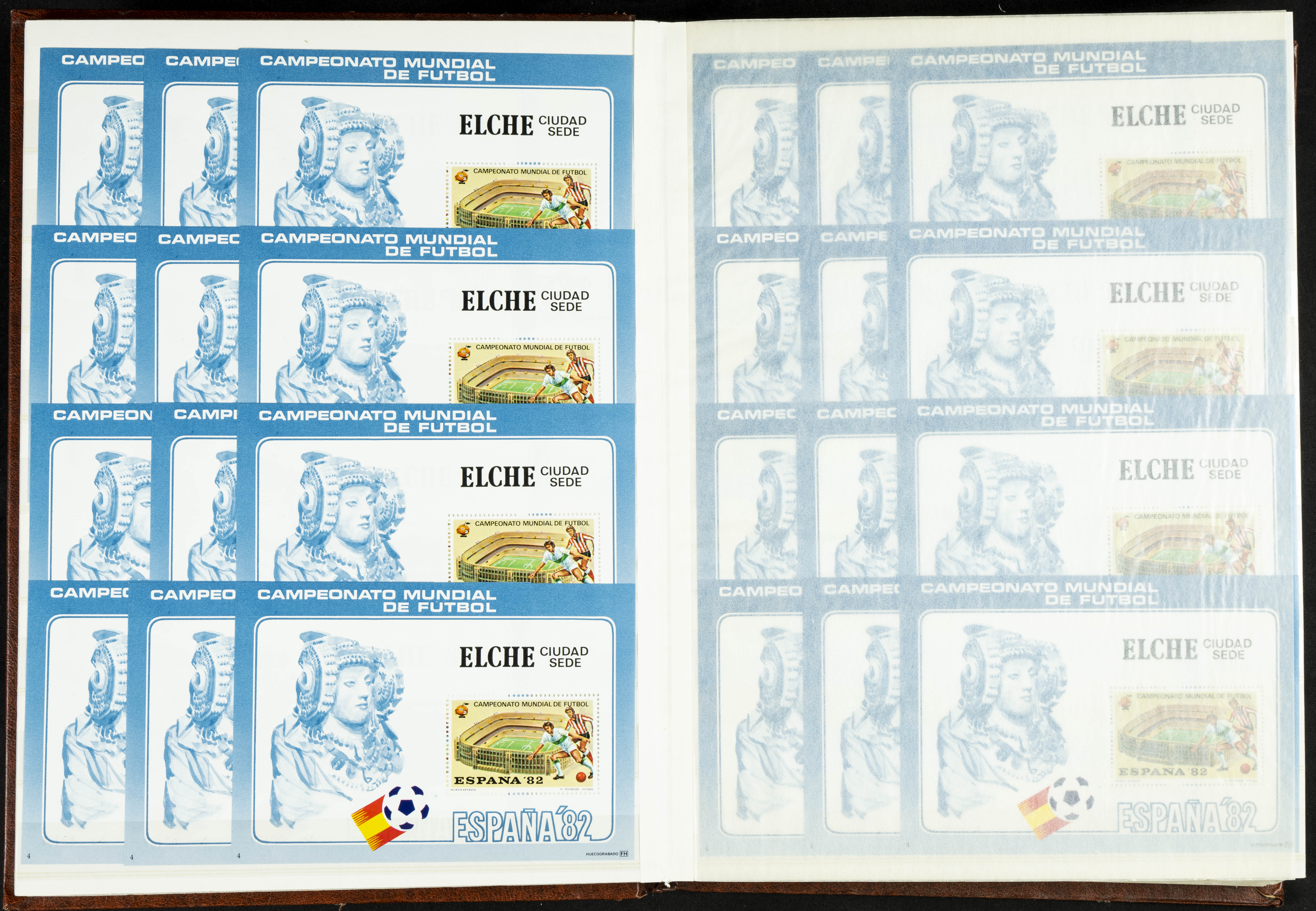 ★★/(1972ca). Conjunto de Hojas Recuerdo entre 1972 y 1982, nuevas (alguna usada) y con algunas repeticiones, incluye al menos cuarenta y cinco juegos de hojitas del Mundial 82 (Sedes) dentadas, veinticuatro juegos sin dentar, azules (dentadas), así como veinticuatro juegos sin dentar de las hojitas de las fases preliminares, entre otras. ALTISIMO VALOR DE CATALOGO. A EXAMINAR.