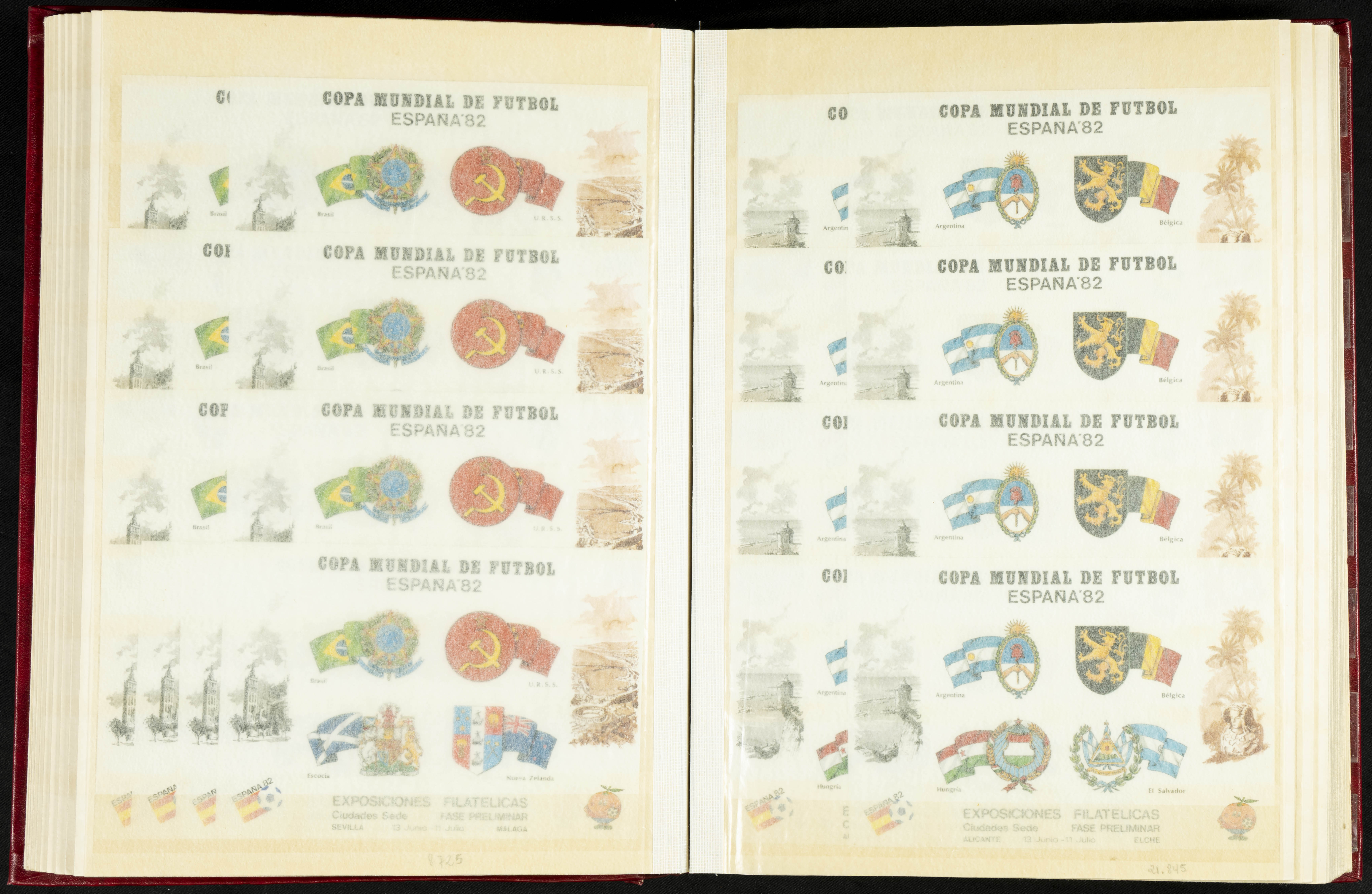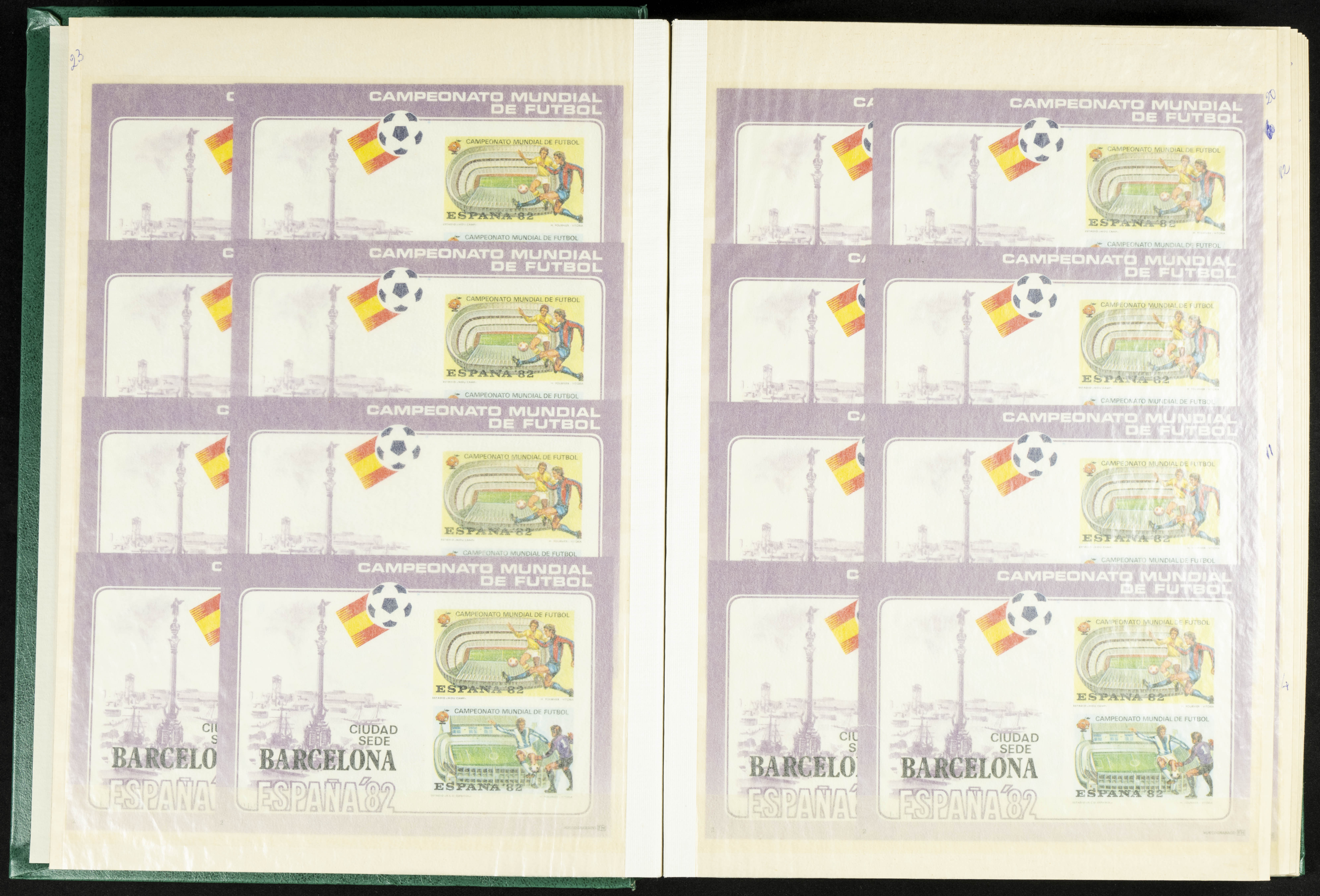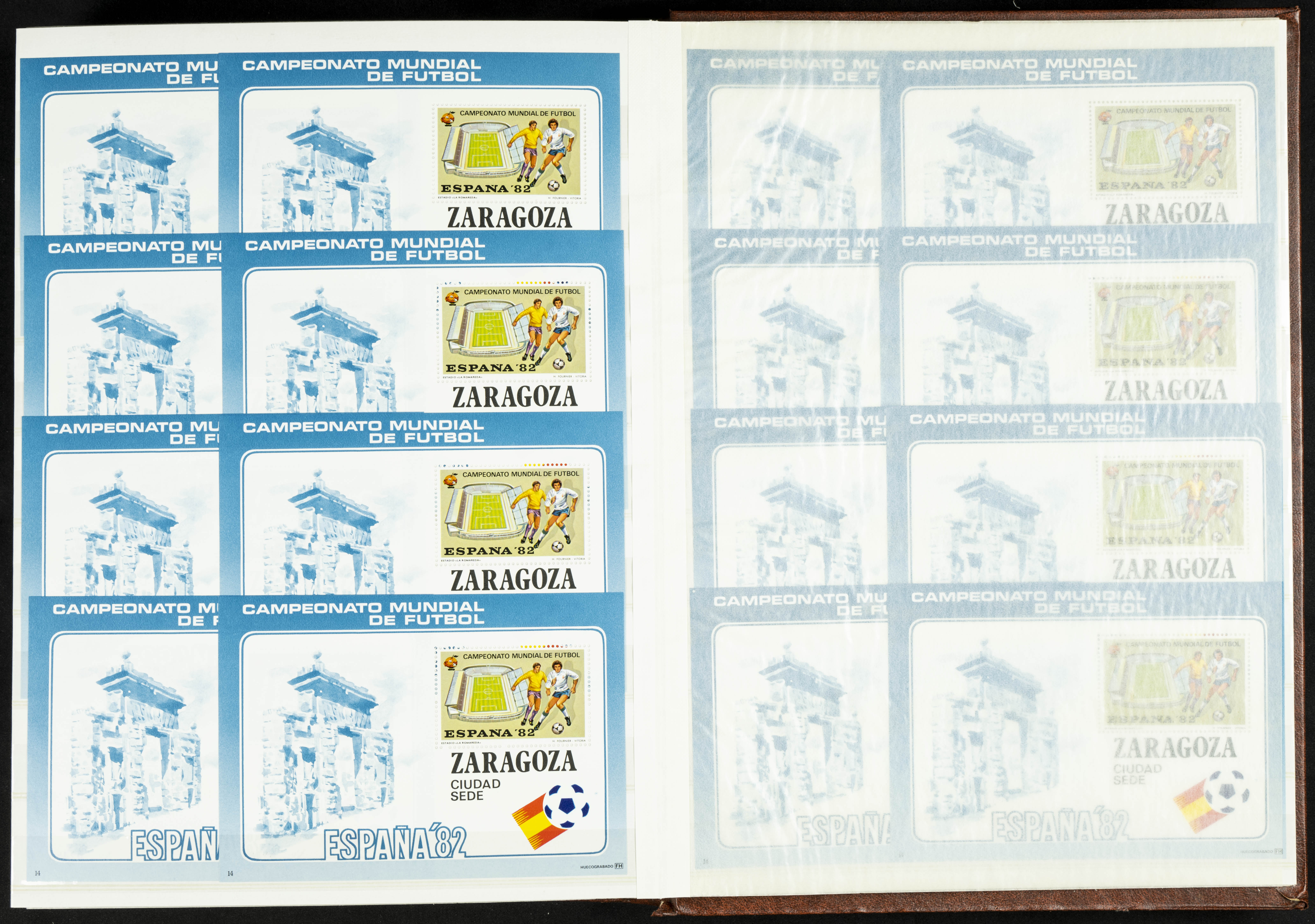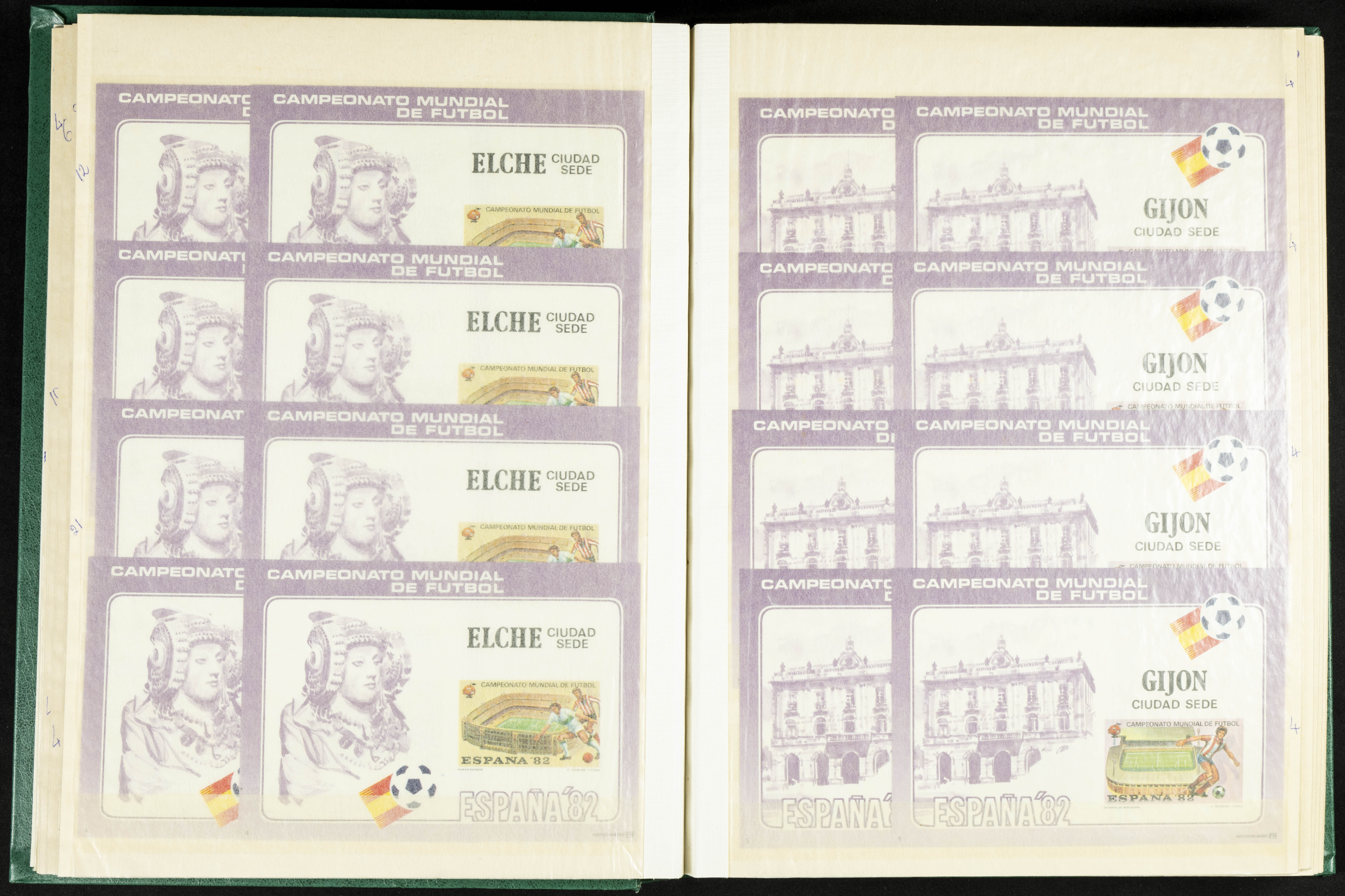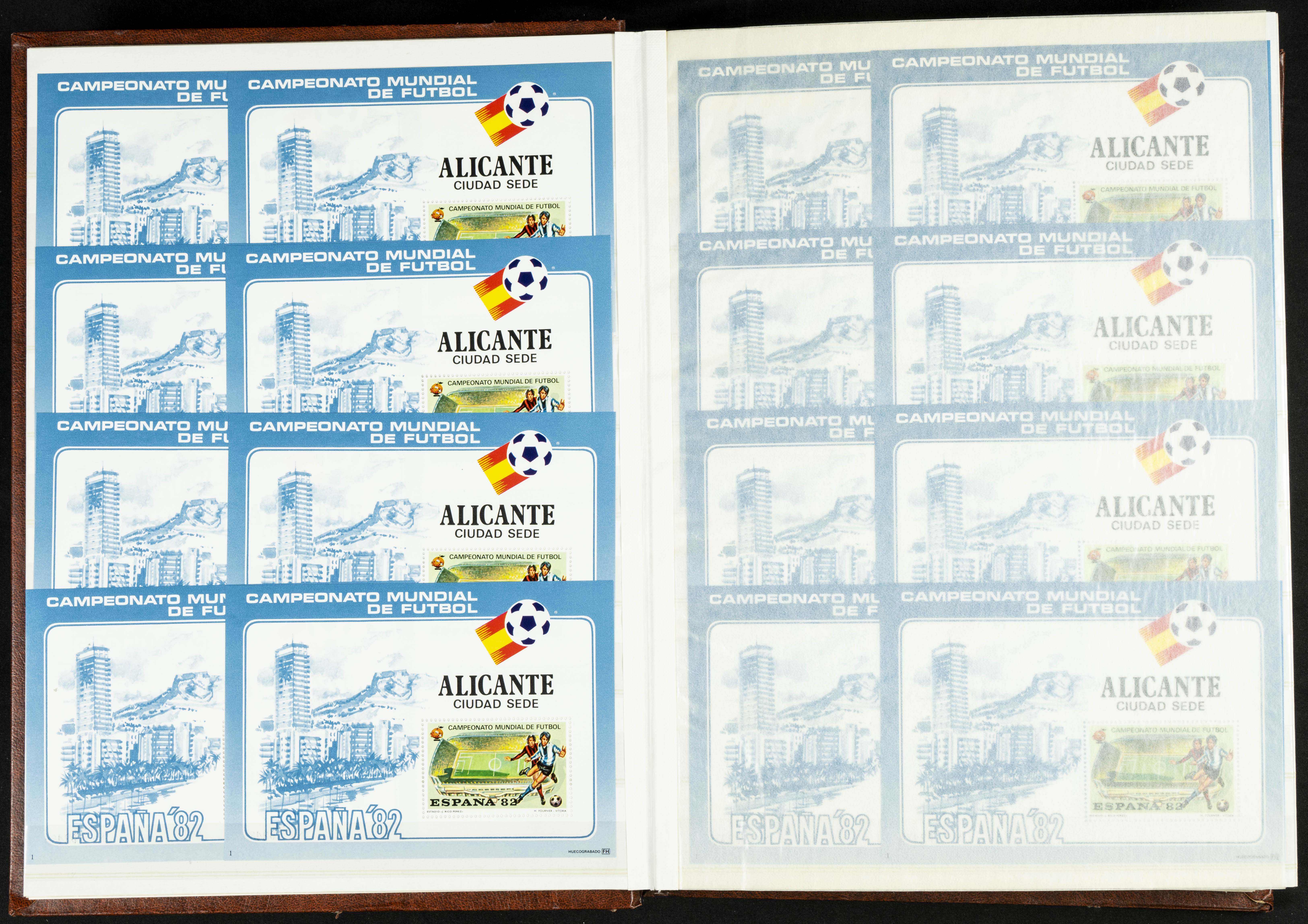 ★★/(1972ca). Conjunto de Hojas Recuerdo entre 1972 y 1982, nuevas (alguna usada) y con algunas repeticiones, incluye al menos cuarenta y cinco juegos de hojitas del Mundial 82 (Sedes) dentadas, veinticuatro juegos sin dentar, azules (dentadas), así como veinticuatro juegos sin dentar de las hojitas de las fases preliminares, entre otras. ALTISIMO VALOR DE CATALOGO. A EXAMINAR.