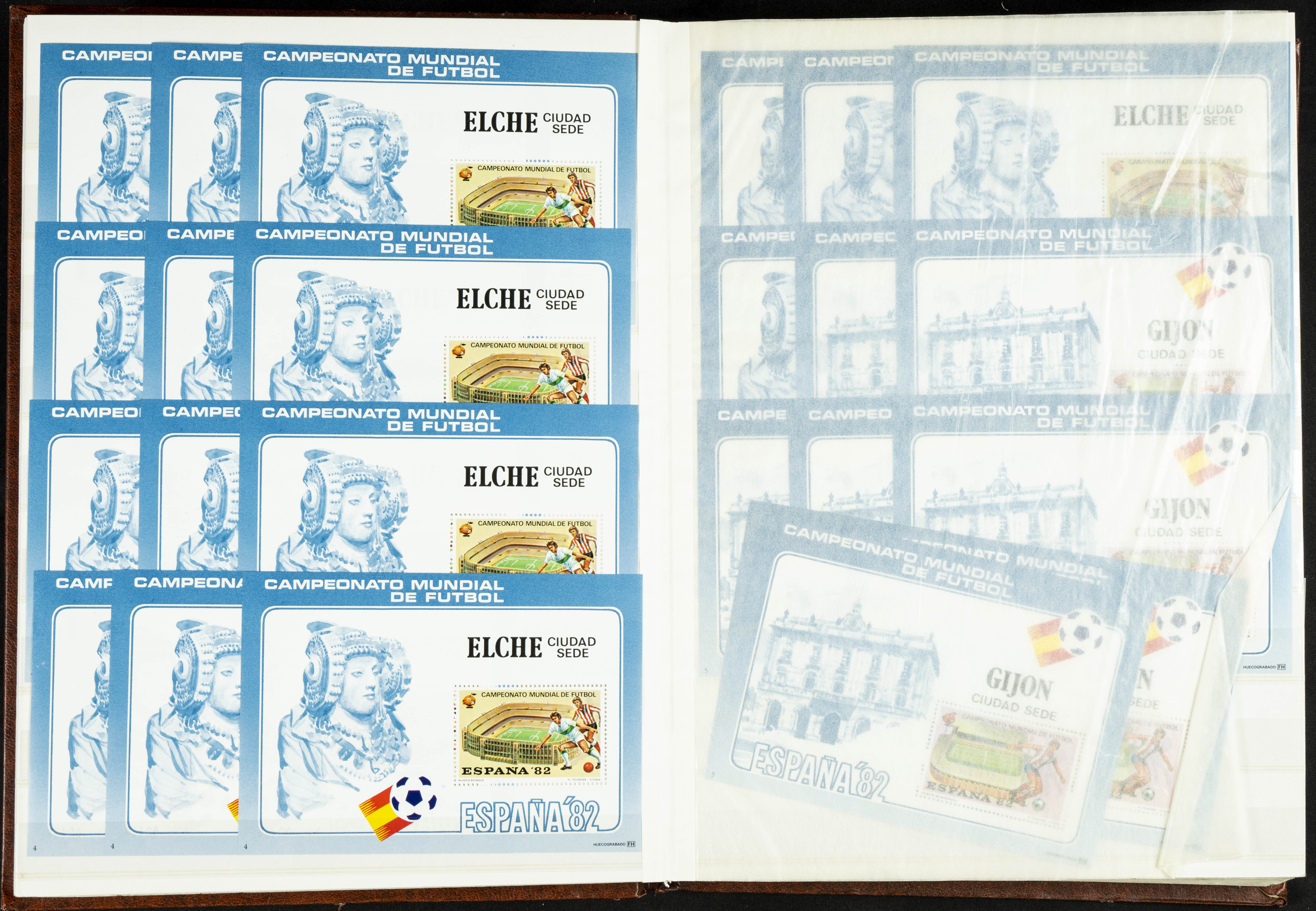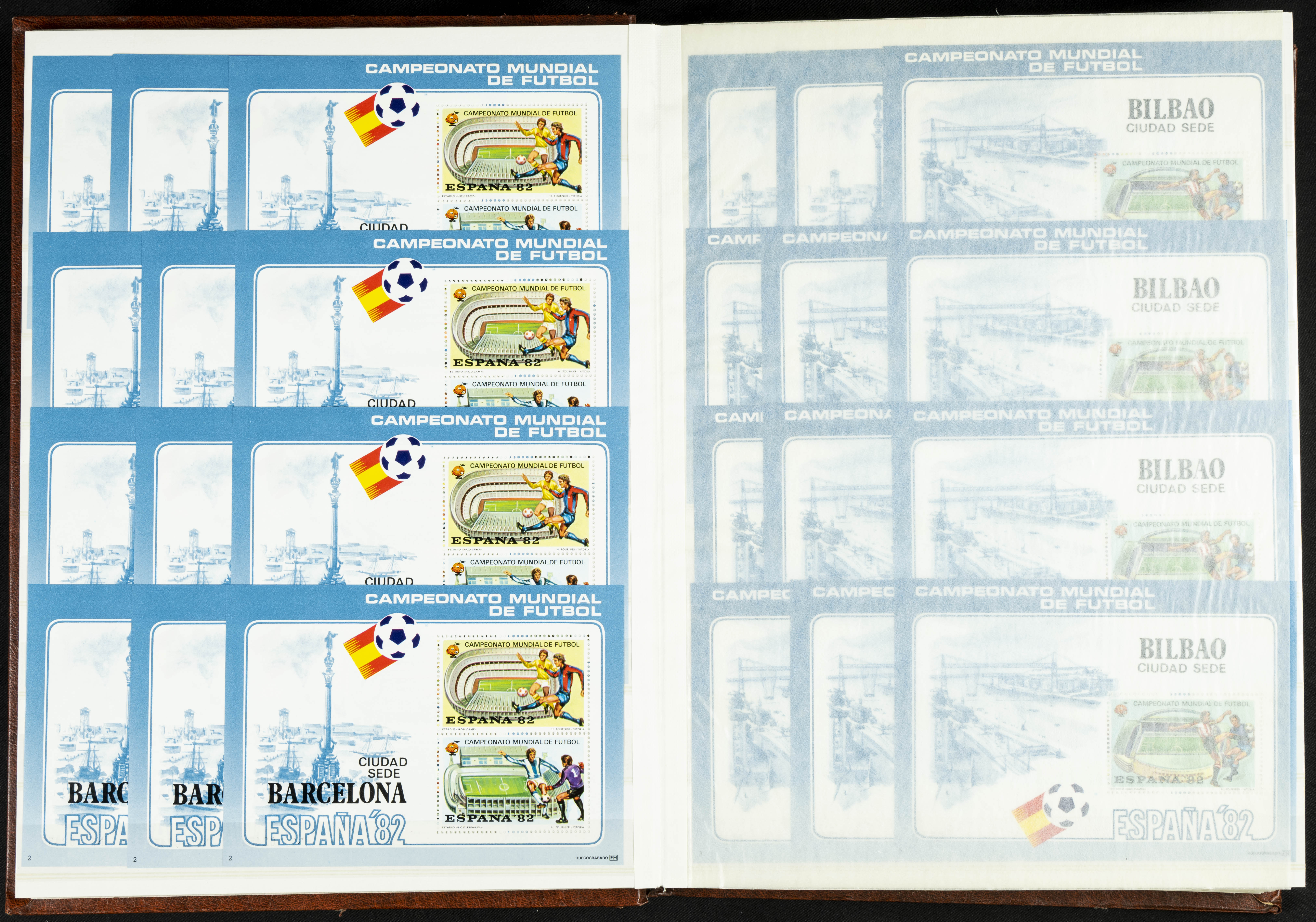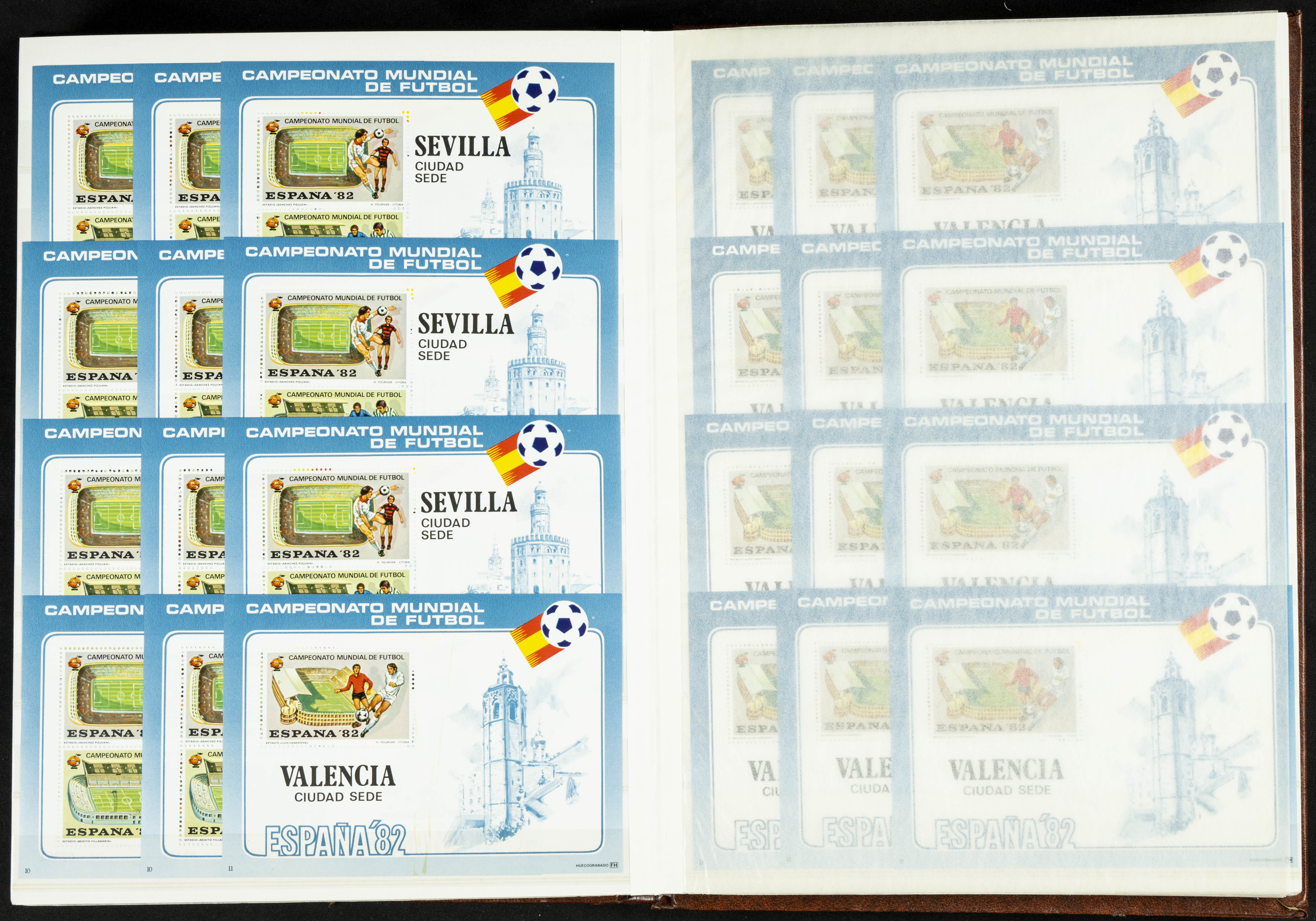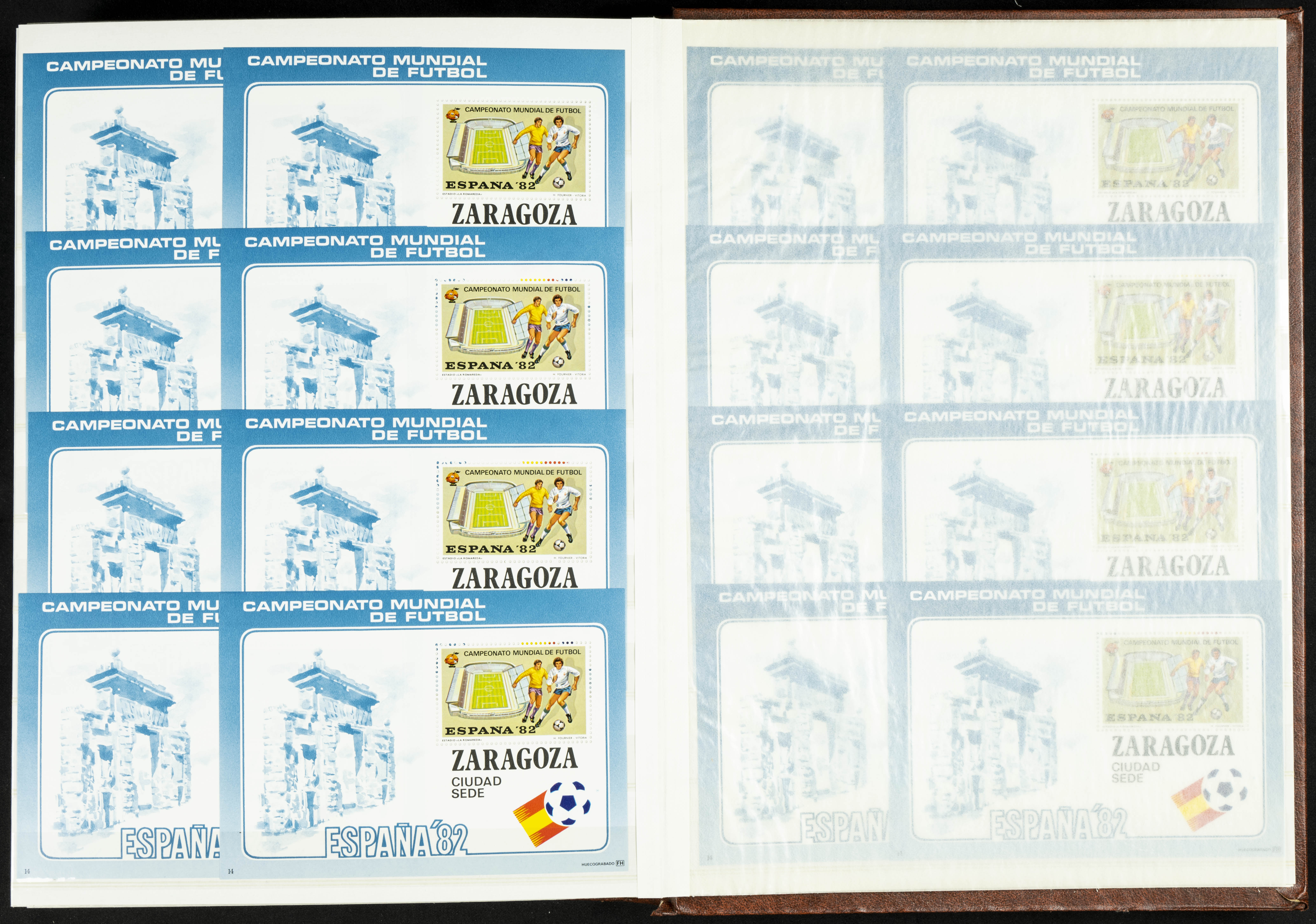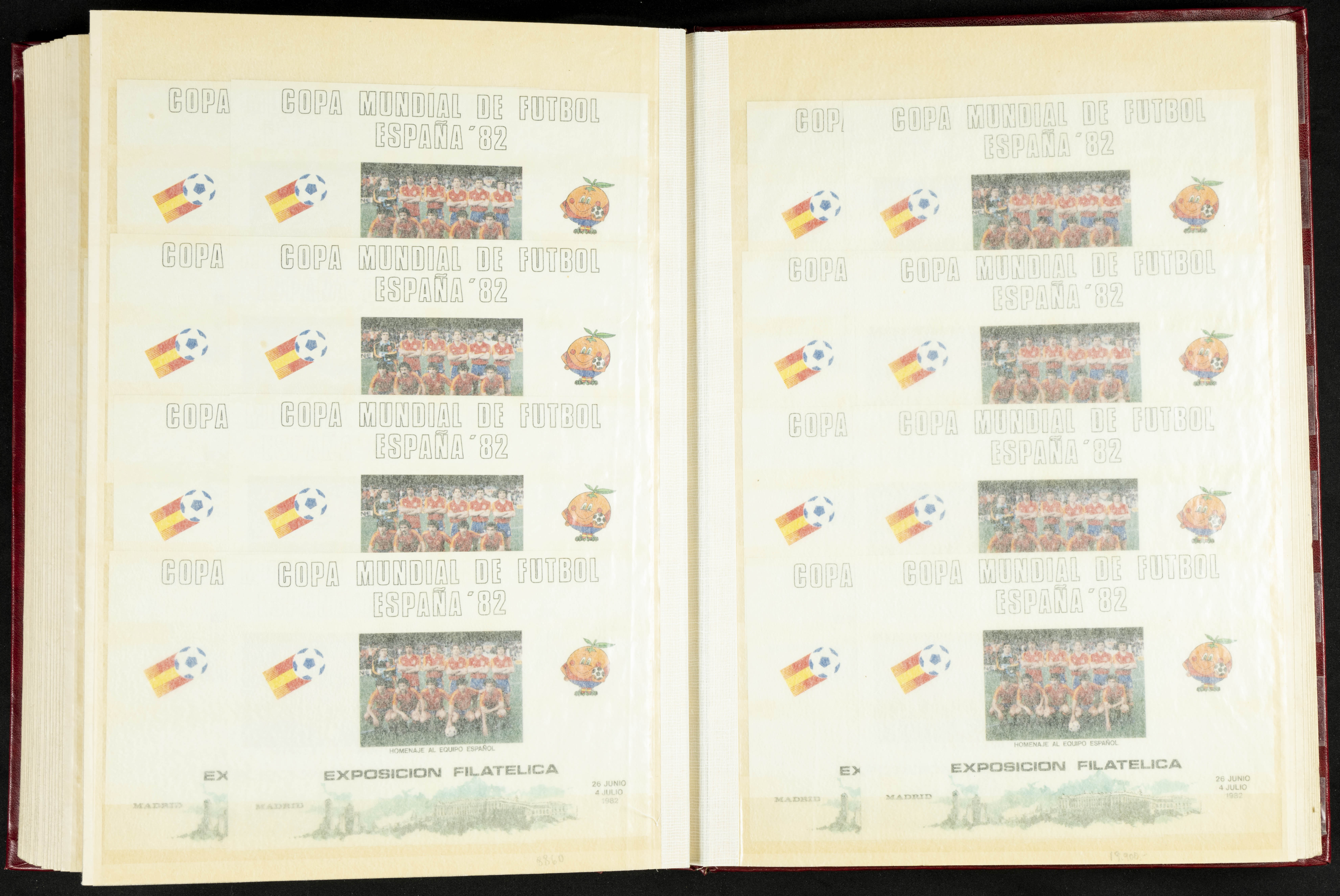 ★★/(1972ca). Conjunto de Hojas Recuerdo entre 1972 y 1982, nuevas (alguna usada) y con algunas repeticiones, incluye al menos cuarenta y cinco juegos de hojitas del Mundial 82 (Sedes) dentadas, veinticuatro juegos sin dentar, azules (dentadas), así como veinticuatro juegos sin dentar de las hojitas de las fases preliminares, entre otras. ALTISIMO VALOR DE CATALOGO. A EXAMINAR.