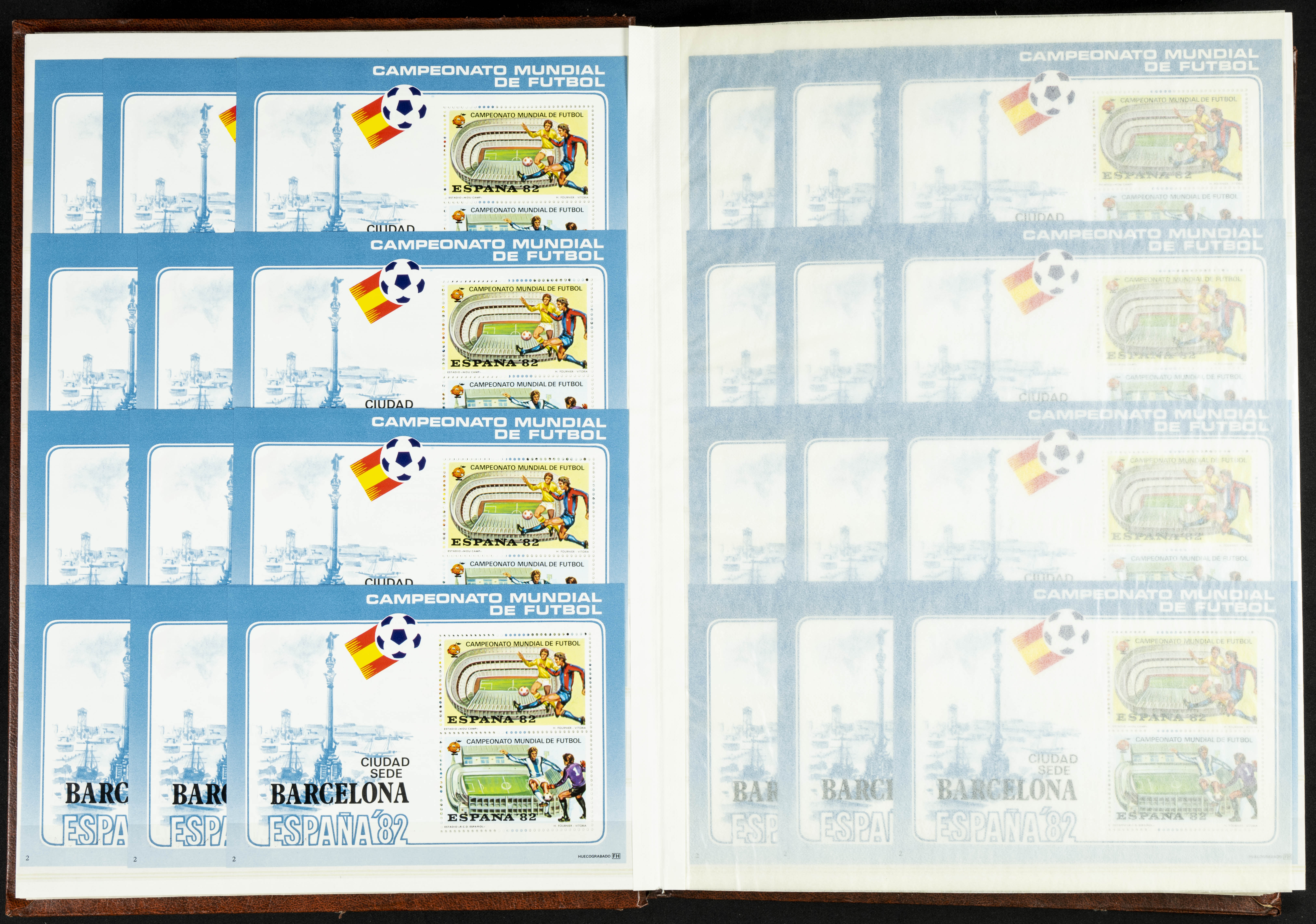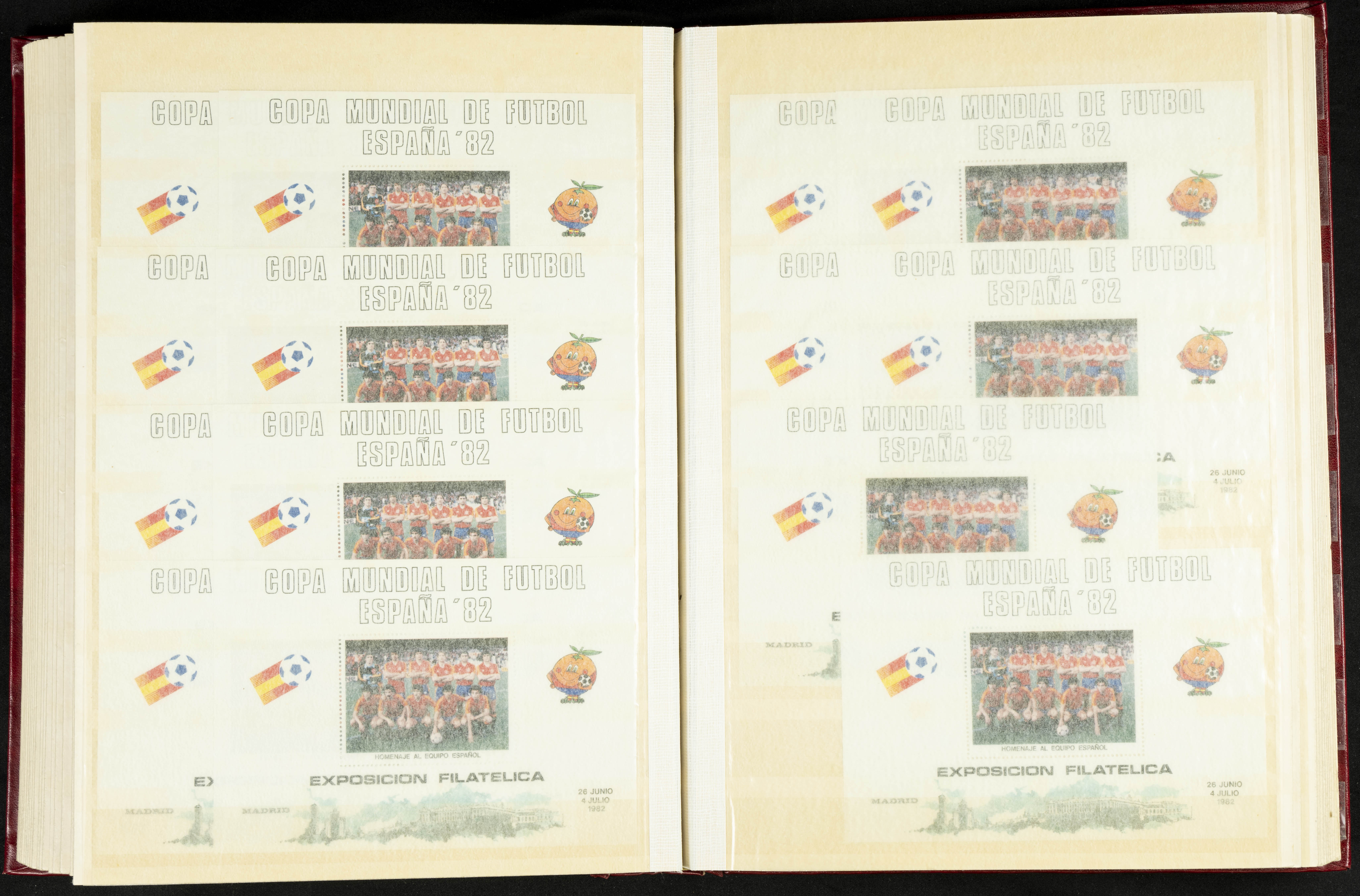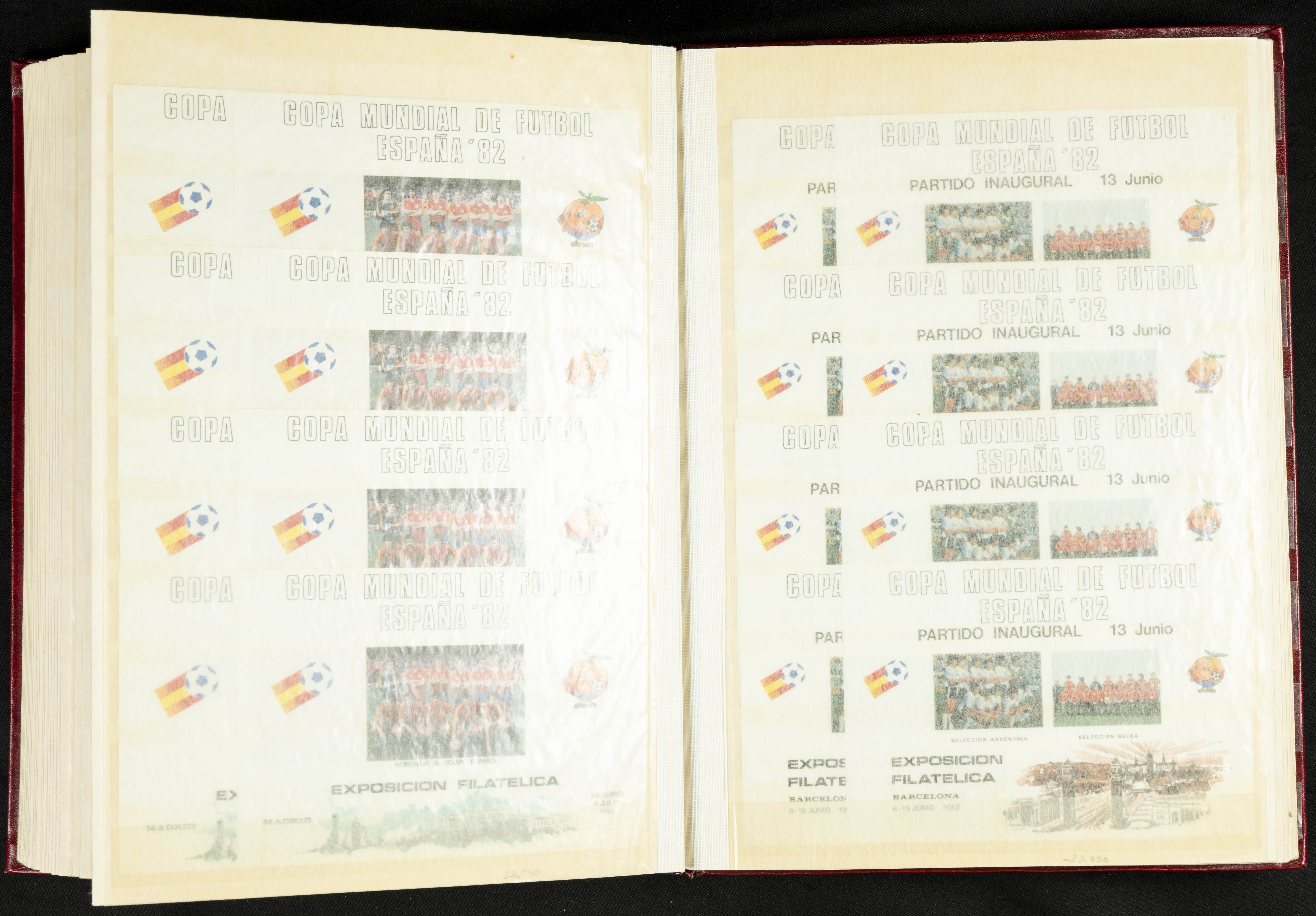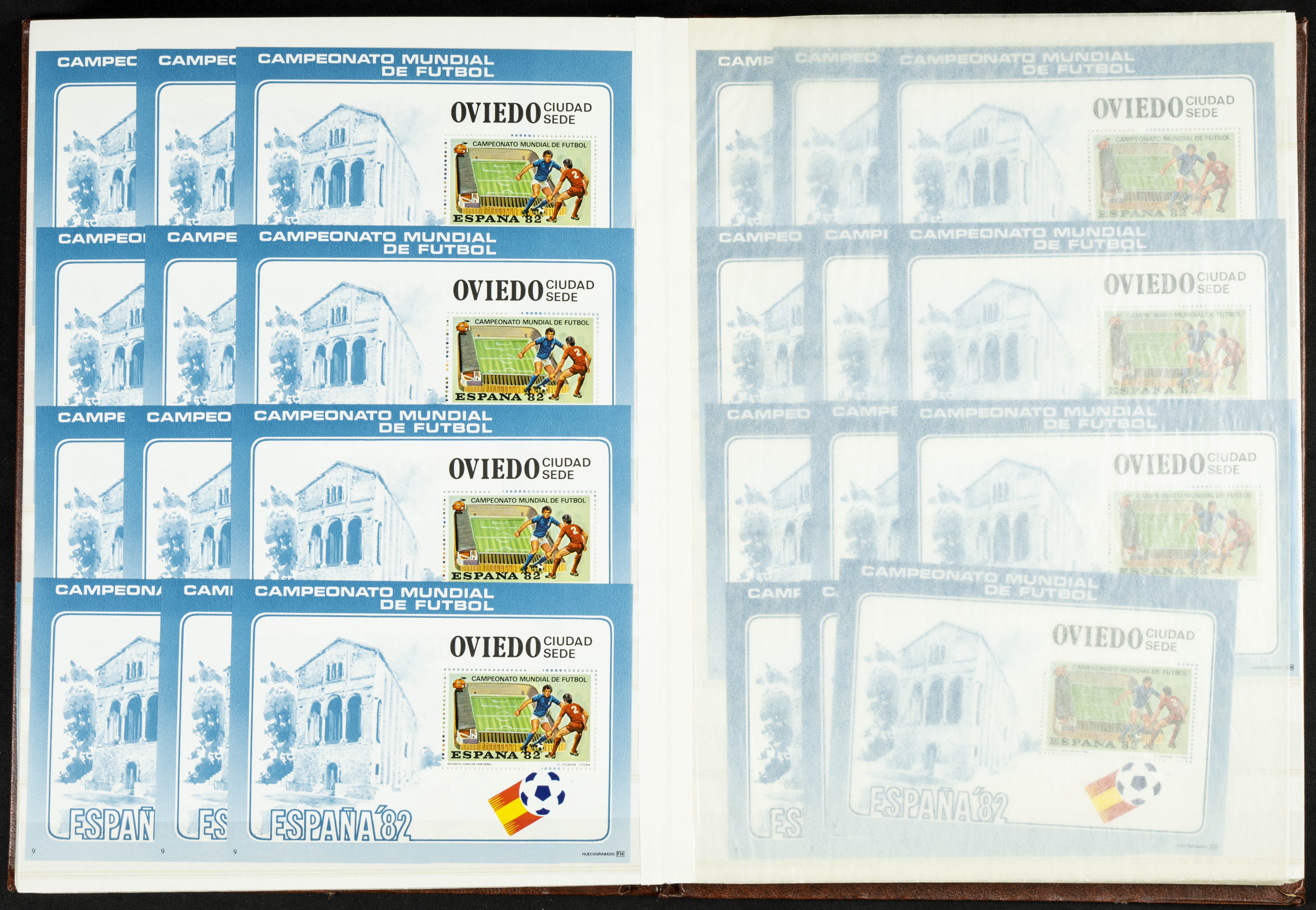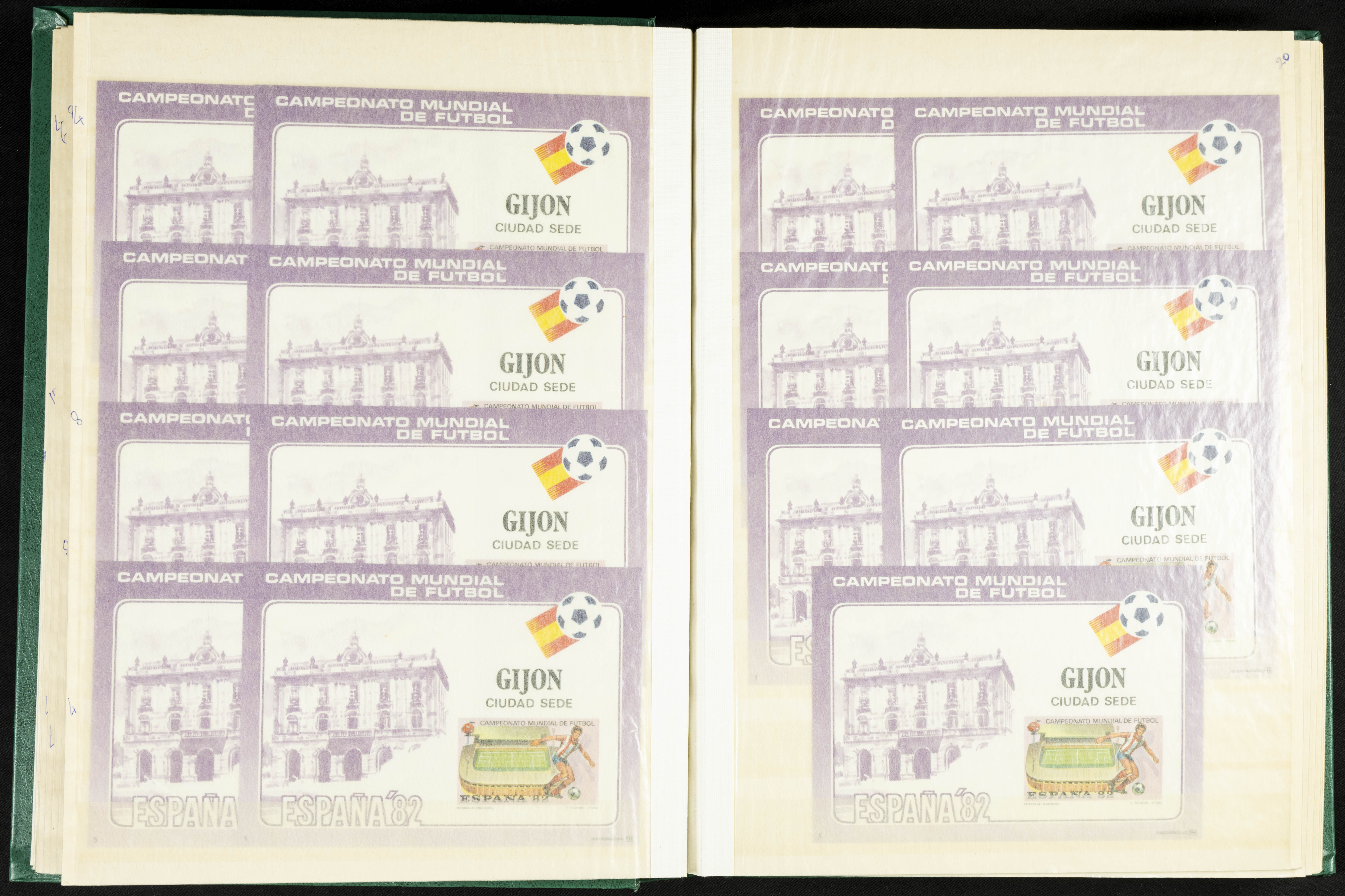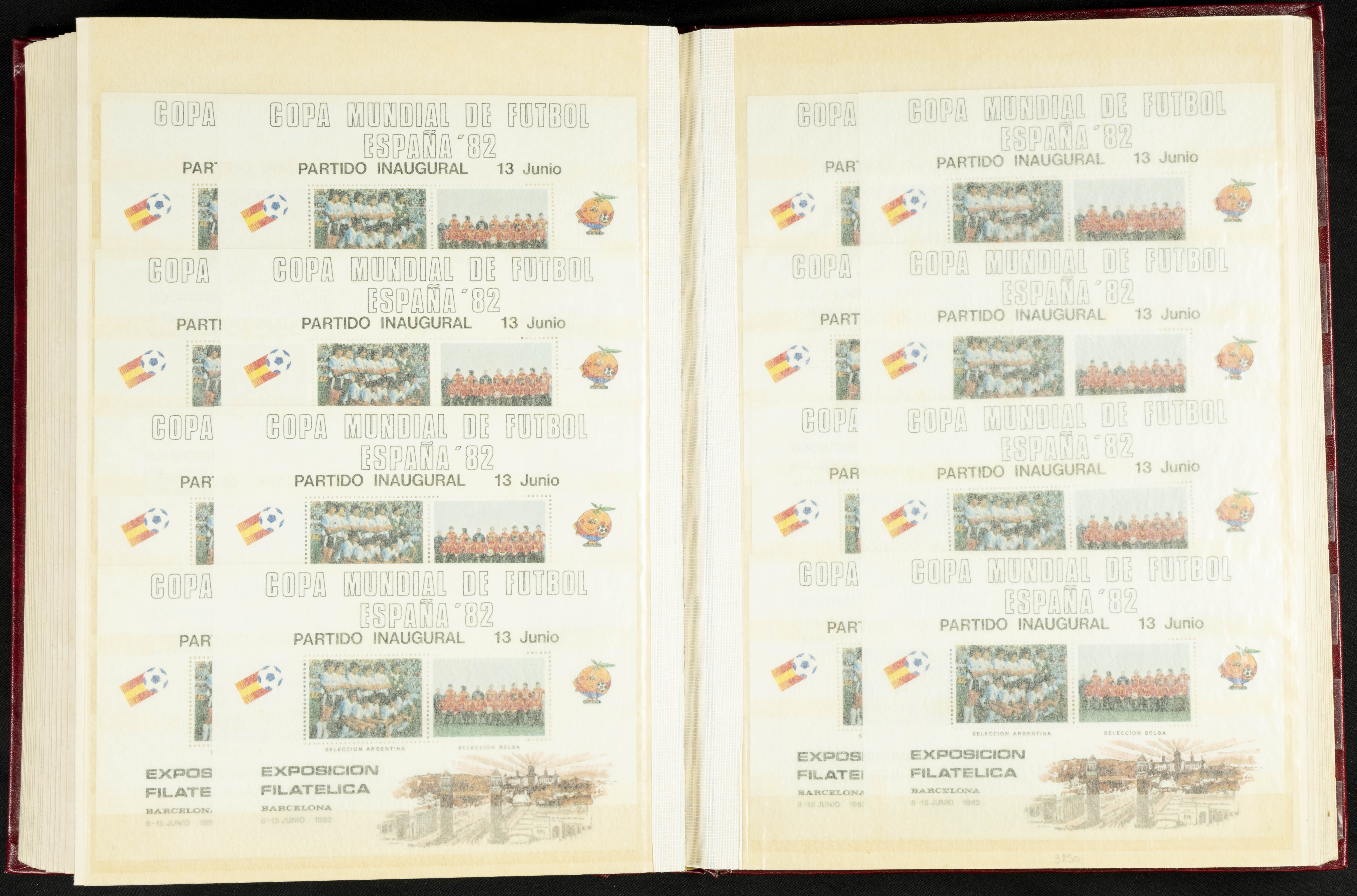 ★★/(1972ca). Conjunto de Hojas Recuerdo entre 1972 y 1982, nuevas (alguna usada) y con algunas repeticiones, incluye al menos cuarenta y cinco juegos de hojitas del Mundial 82 (Sedes) dentadas, veinticuatro juegos sin dentar, azules (dentadas), así como veinticuatro juegos sin dentar de las hojitas de las fases preliminares, entre otras. ALTISIMO VALOR DE CATALOGO. A EXAMINAR.