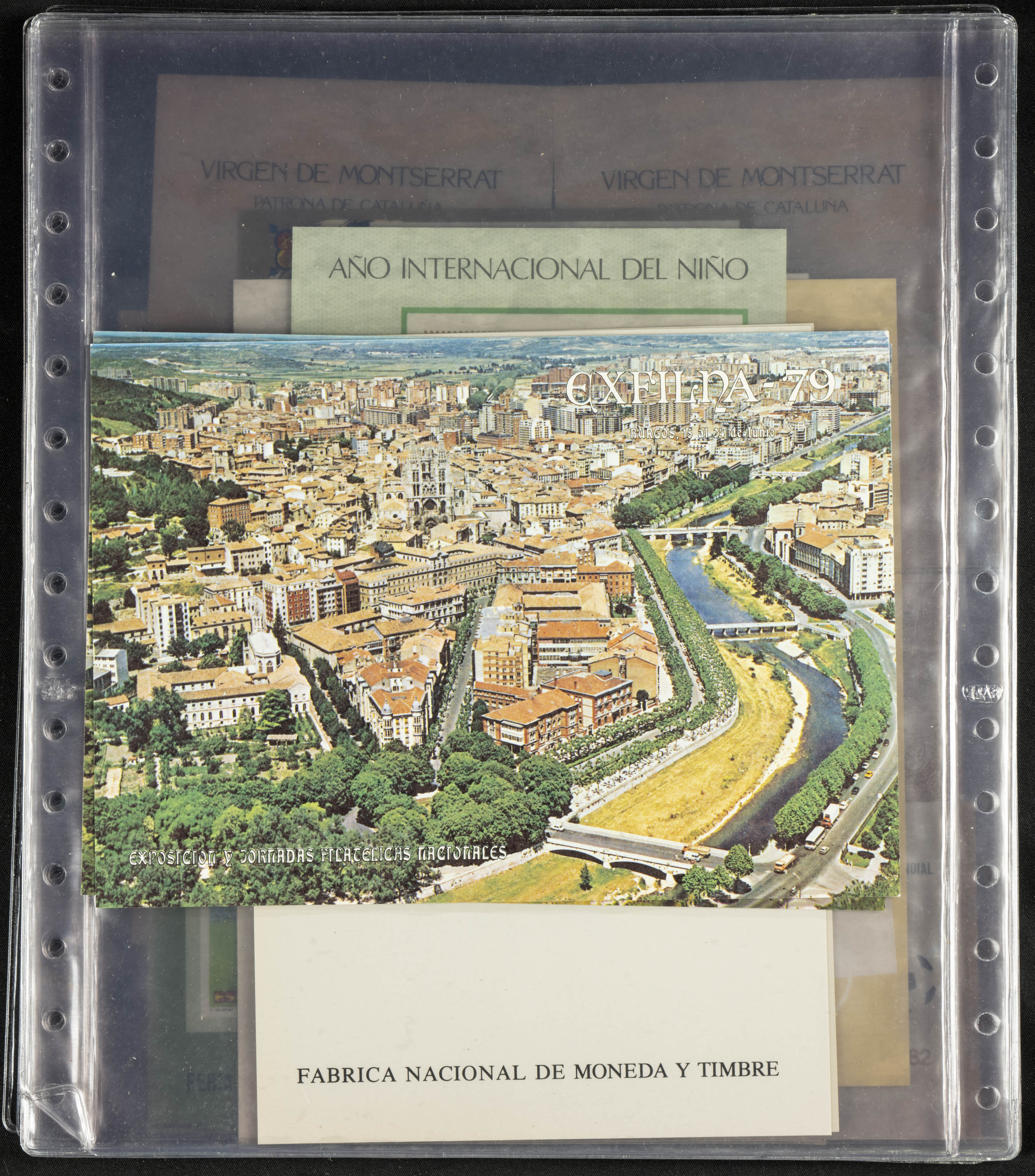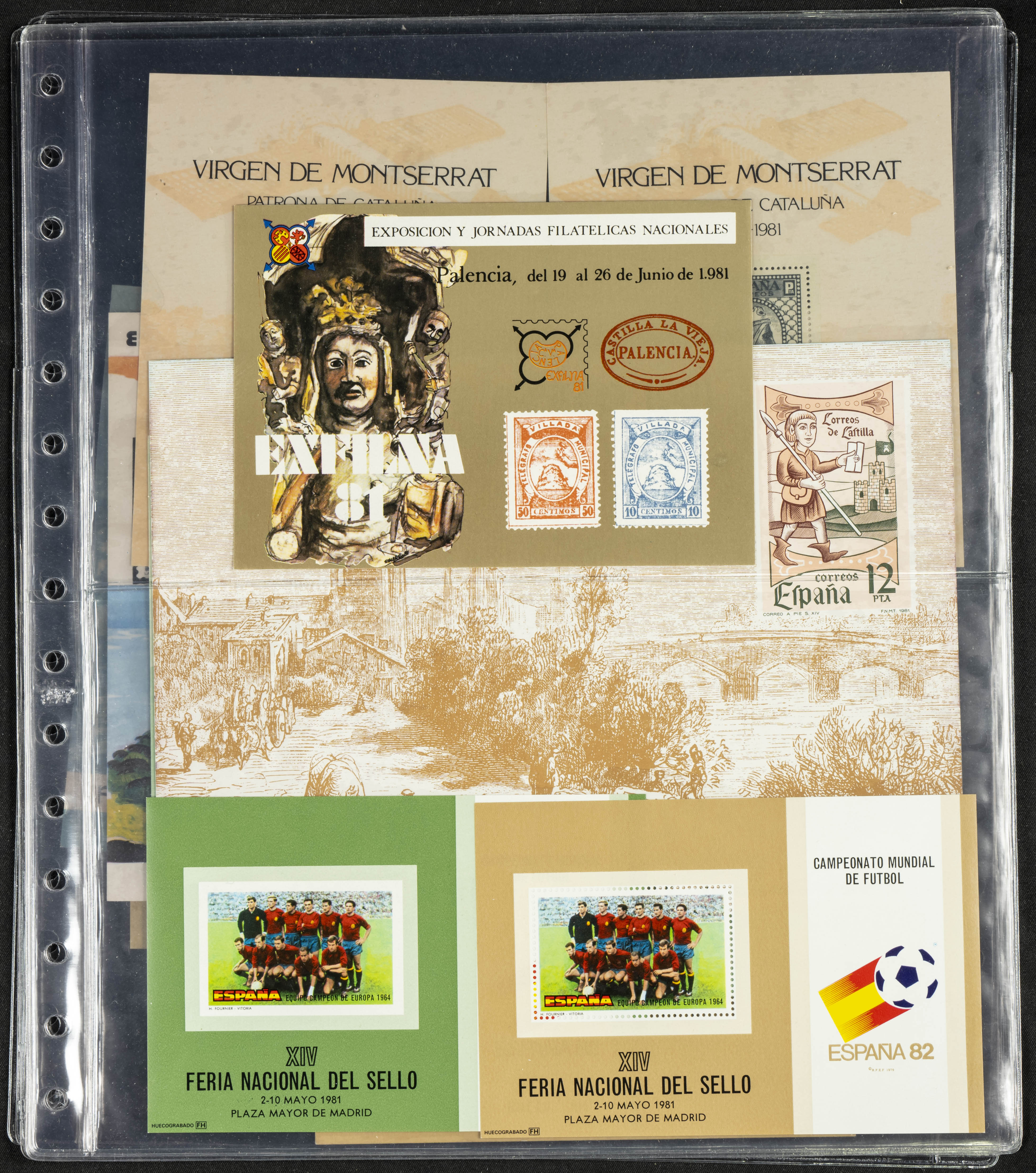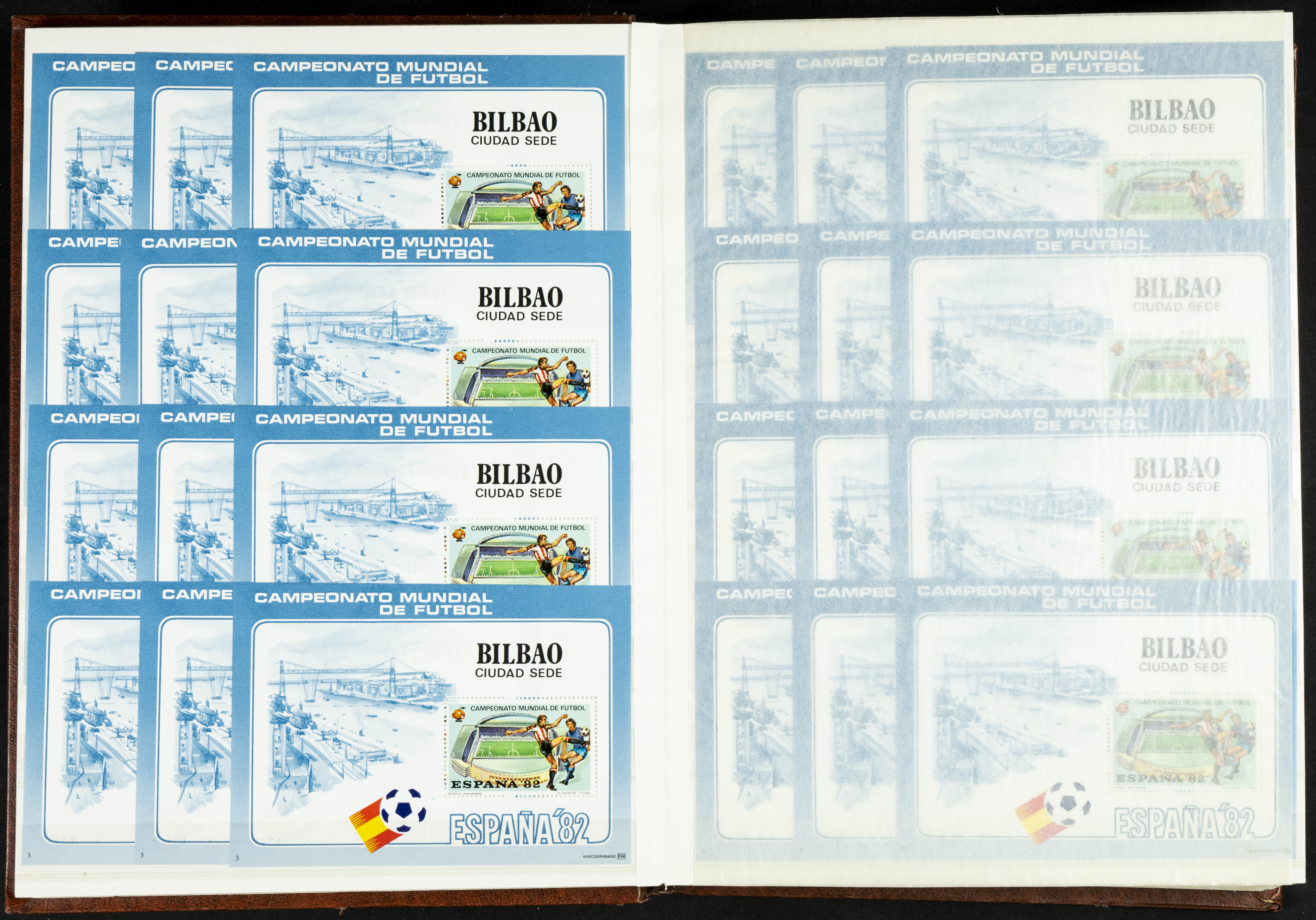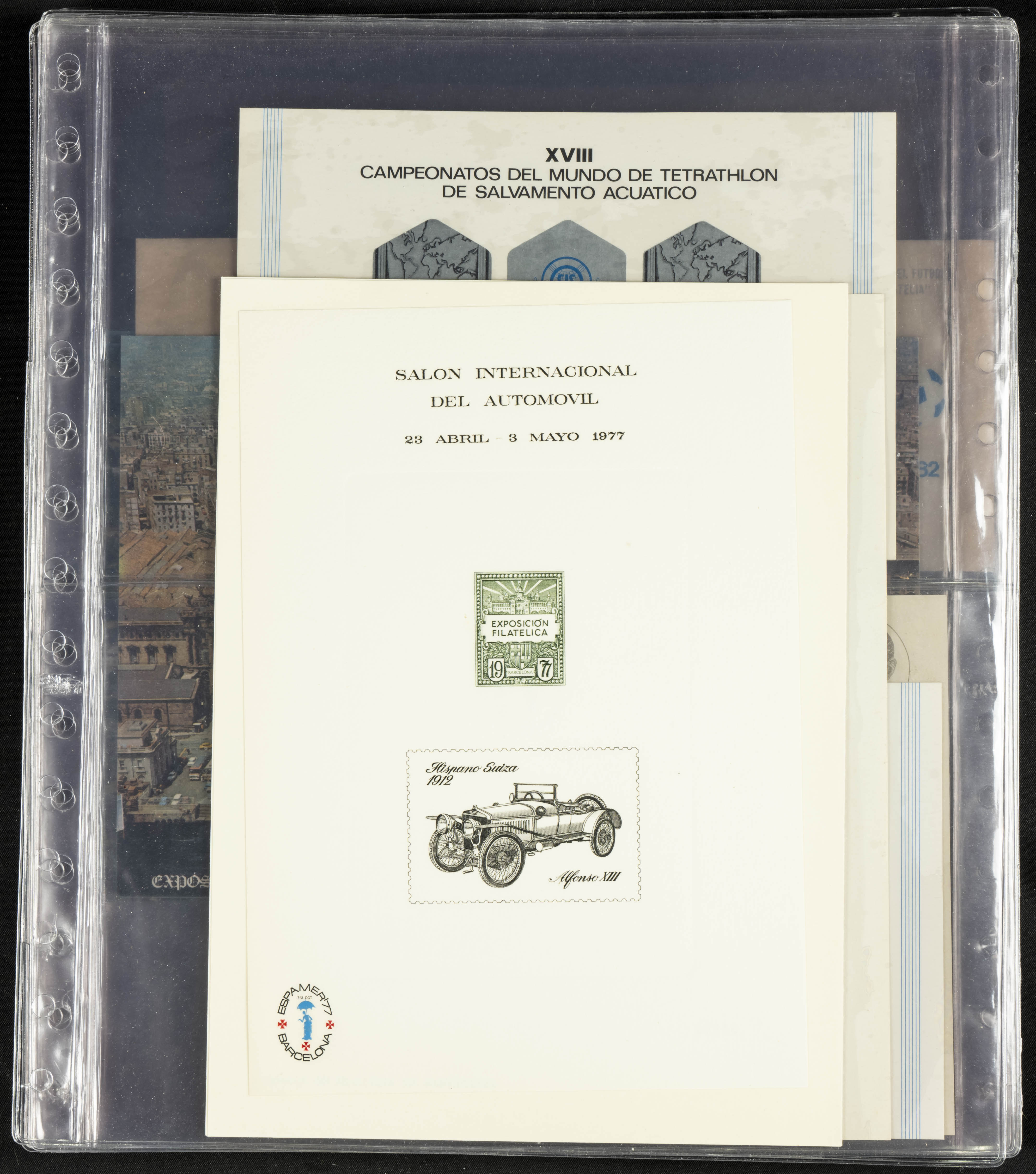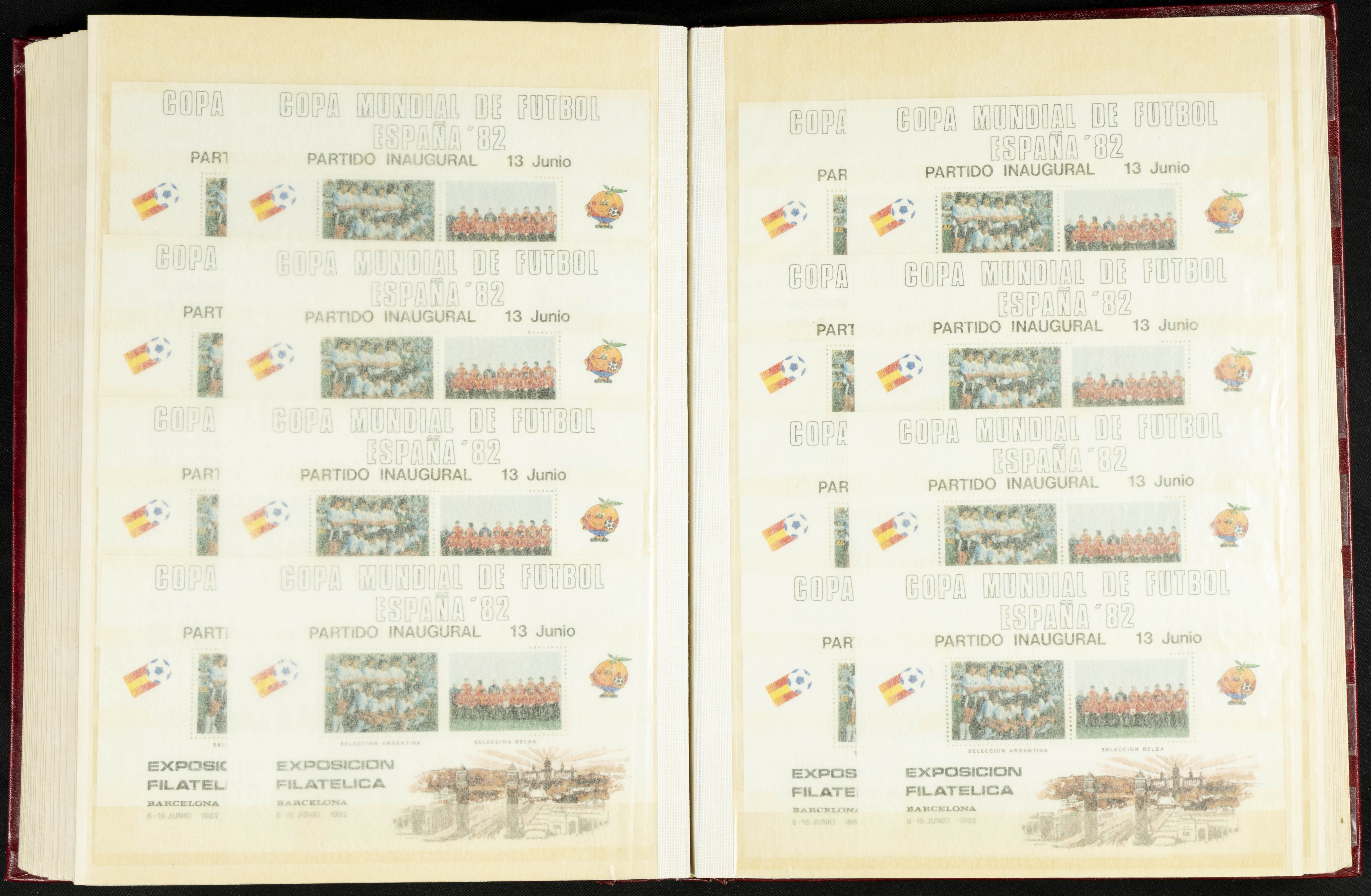 ★★/(1972ca). Conjunto de Hojas Recuerdo entre 1972 y 1982, nuevas (alguna usada) y con algunas repeticiones, incluye al menos cuarenta y cinco juegos de hojitas del Mundial 82 (Sedes) dentadas, veinticuatro juegos sin dentar, azules (dentadas), así como veinticuatro juegos sin dentar de las hojitas de las fases preliminares, entre otras. ALTISIMO VALOR DE CATALOGO. A EXAMINAR.