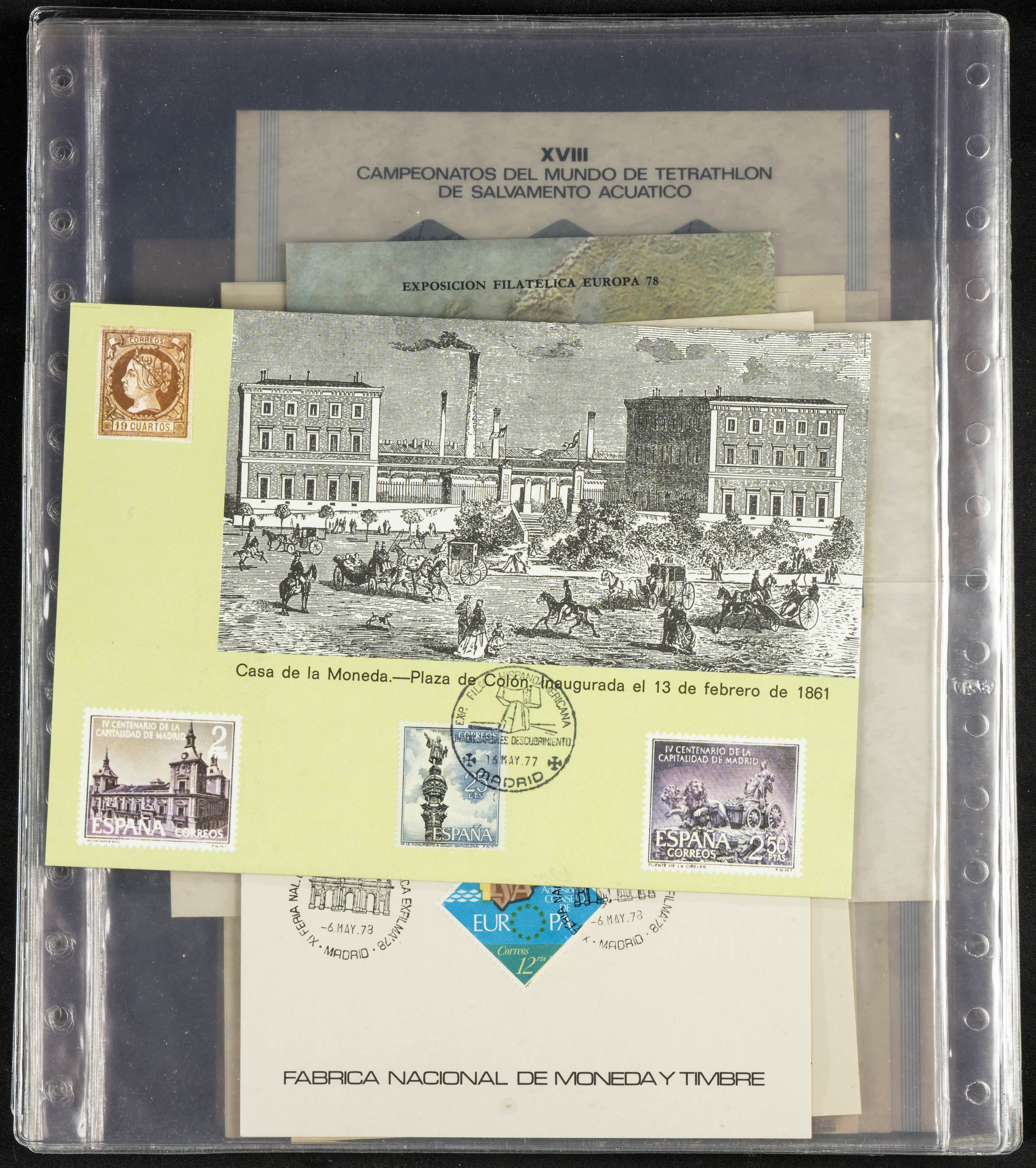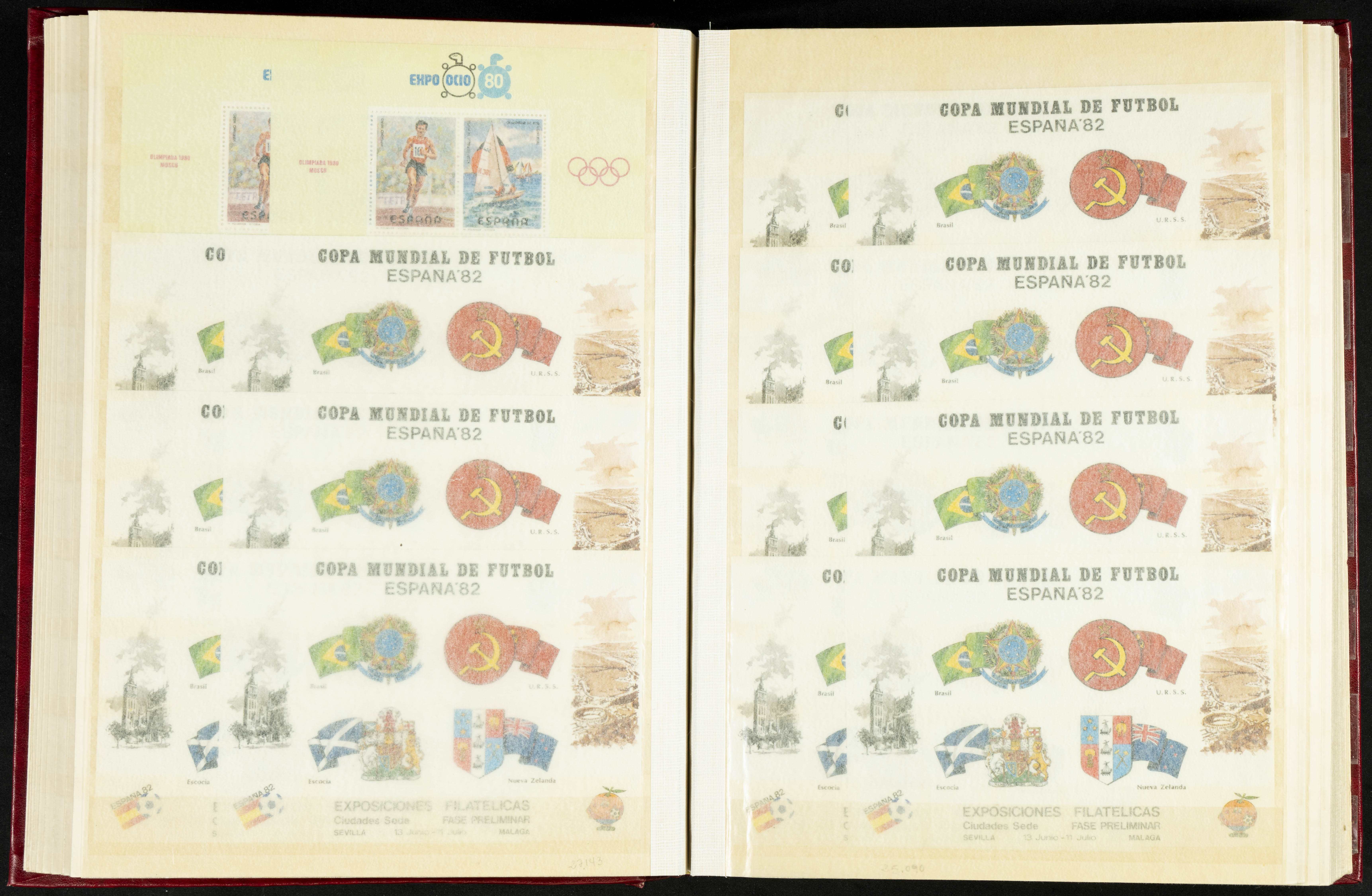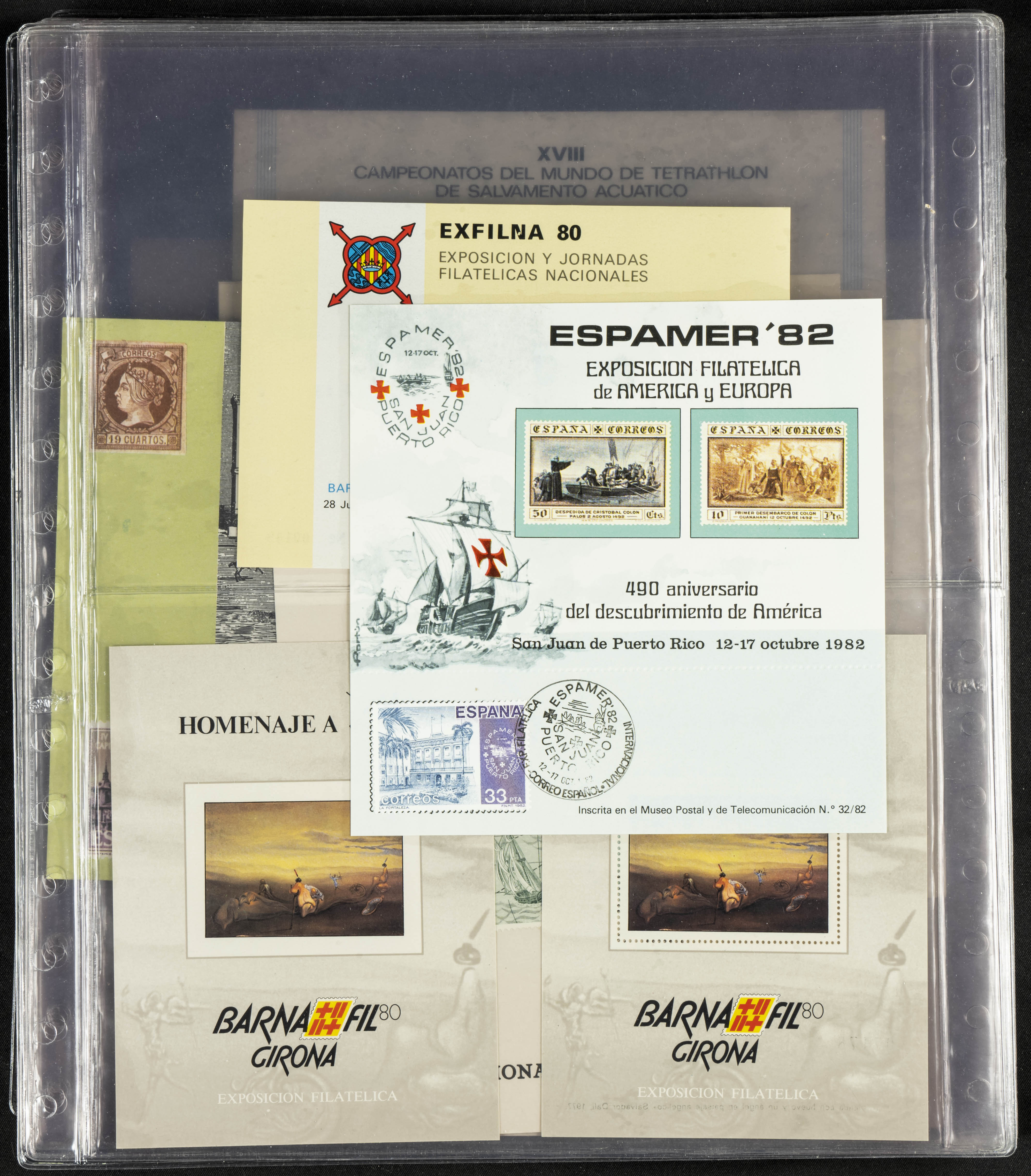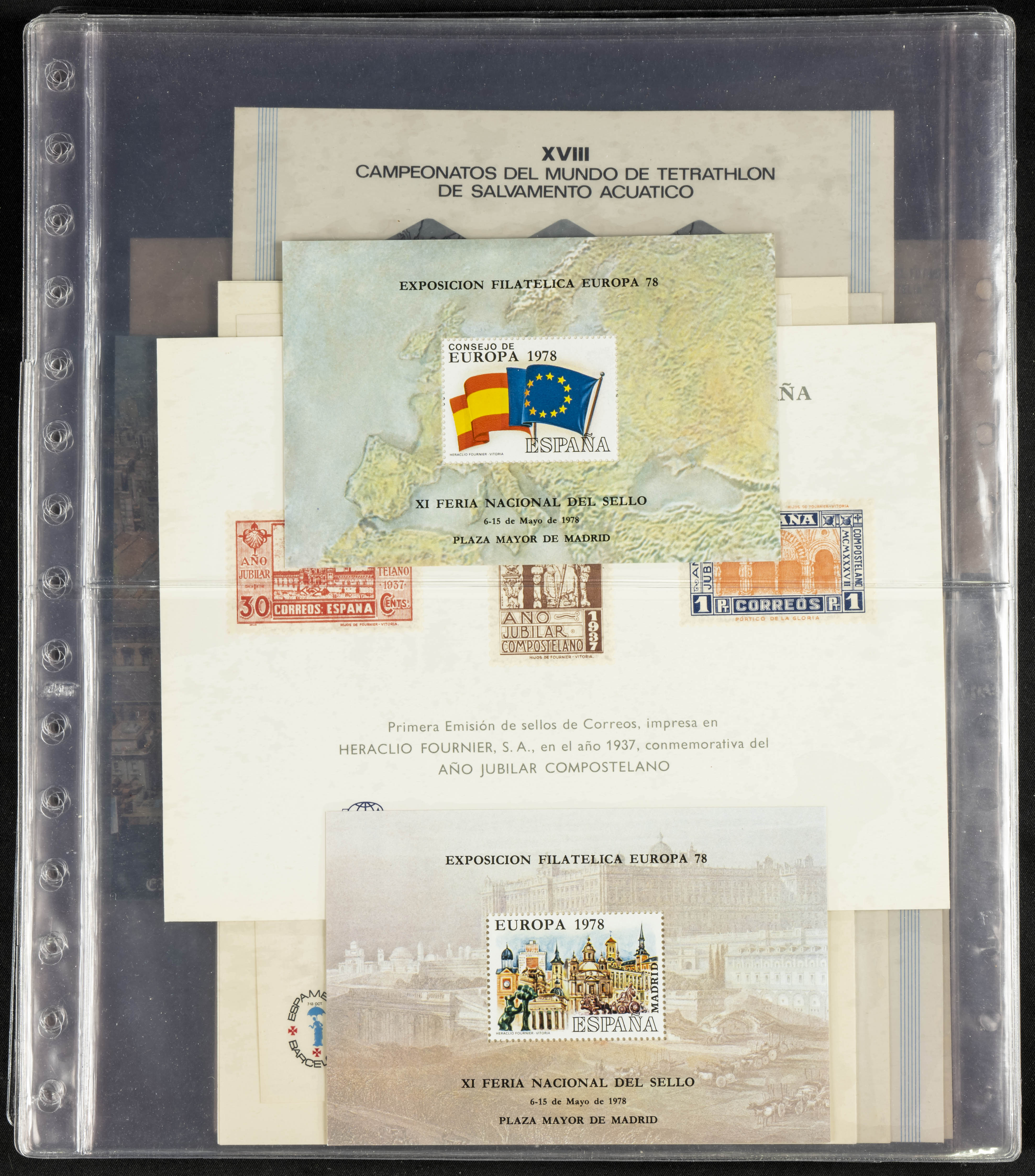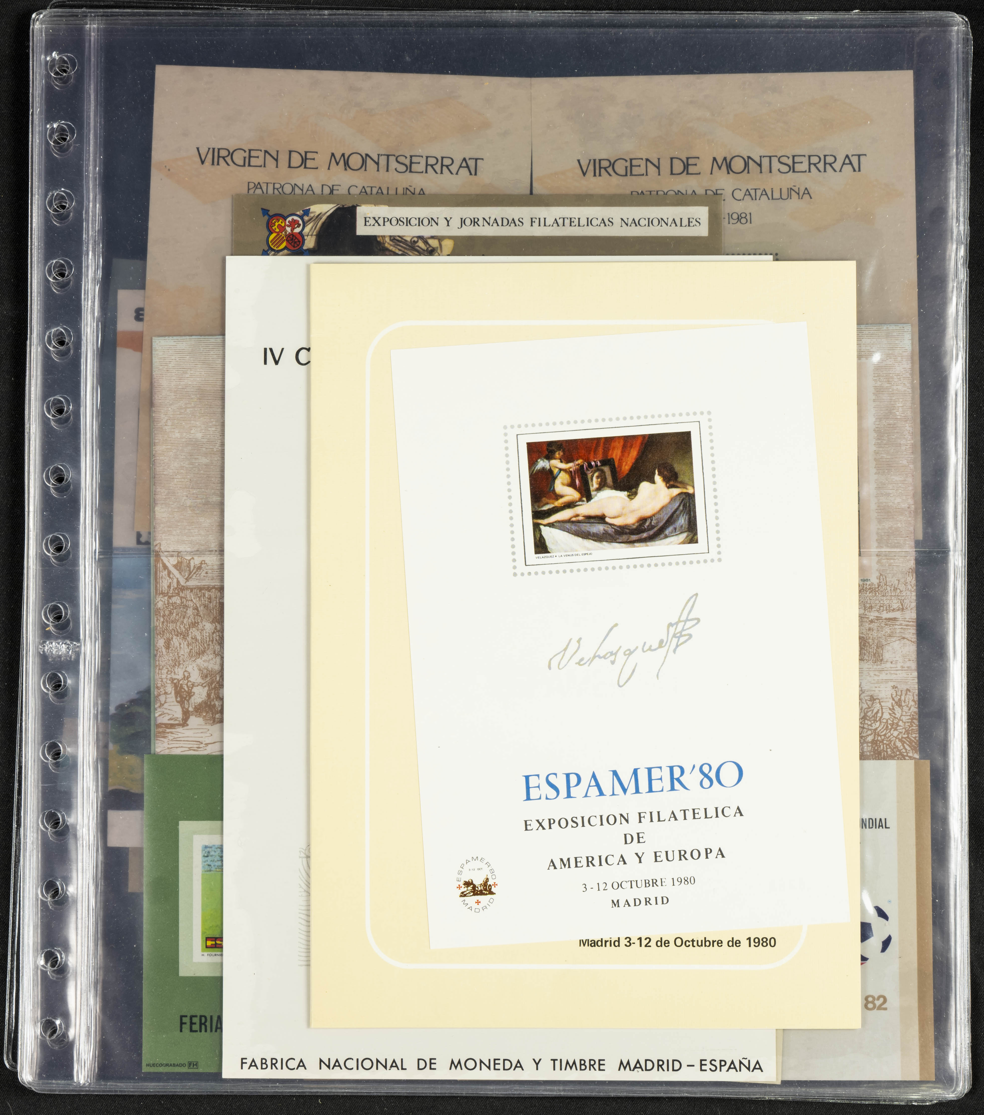 ★★/(1972ca). Conjunto de Hojas Recuerdo entre 1972 y 1982, nuevas (alguna usada) y con algunas repeticiones, incluye al menos cuarenta y cinco juegos de hojitas del Mundial 82 (Sedes) dentadas, veinticuatro juegos sin dentar, azules (dentadas), así como veinticuatro juegos sin dentar de las hojitas de las fases preliminares, entre otras. ALTISIMO VALOR DE CATALOGO. A EXAMINAR.