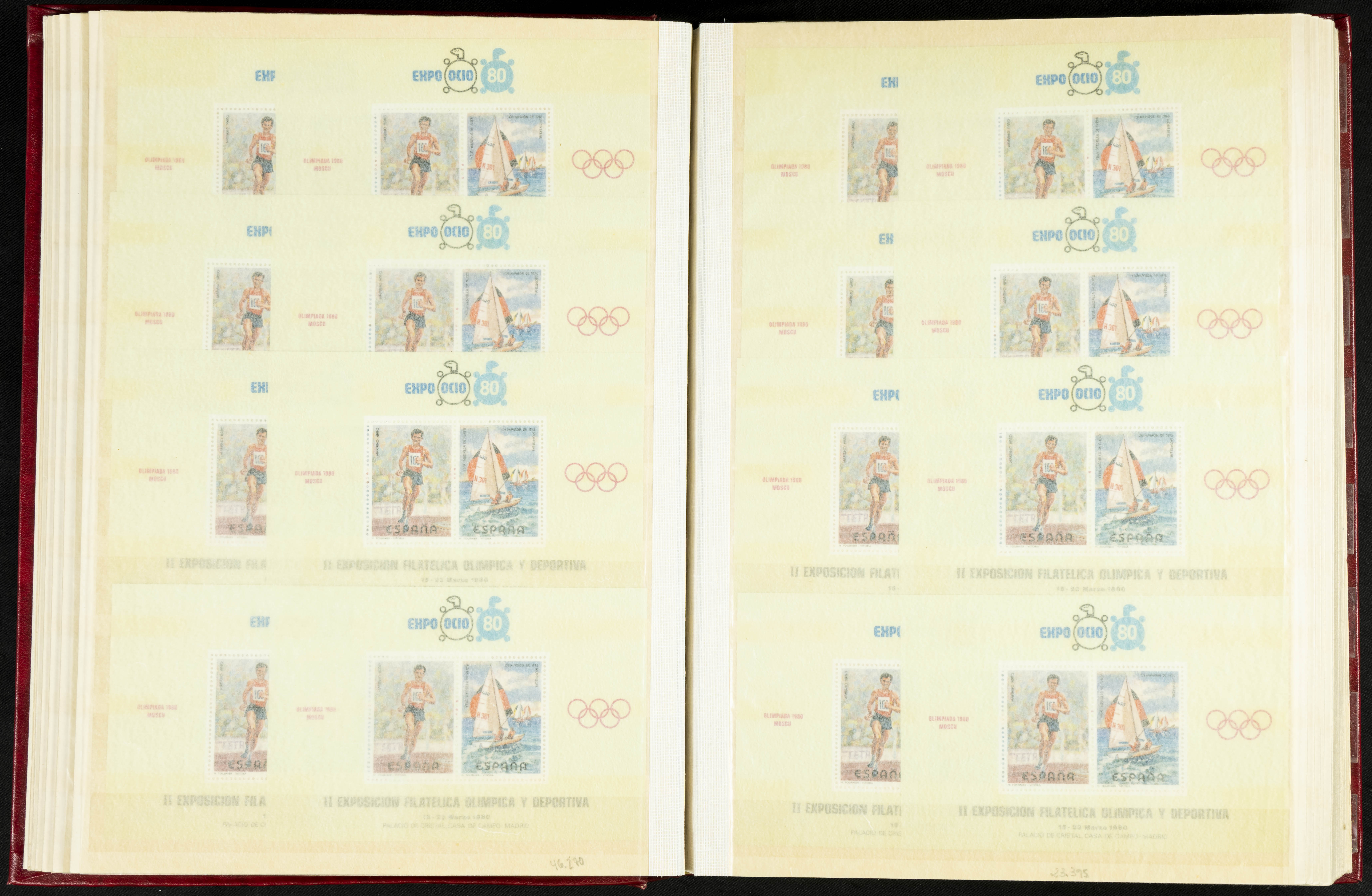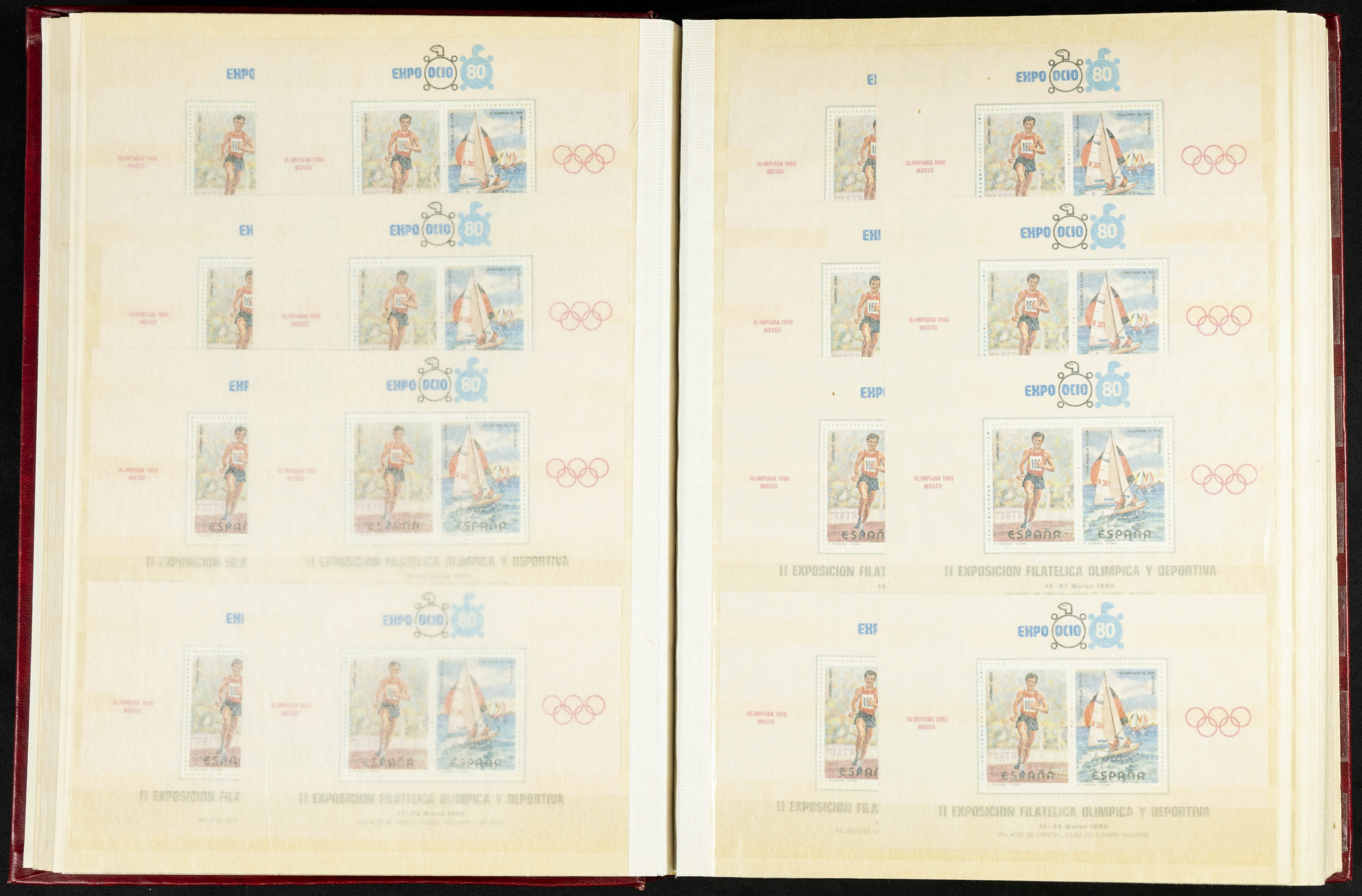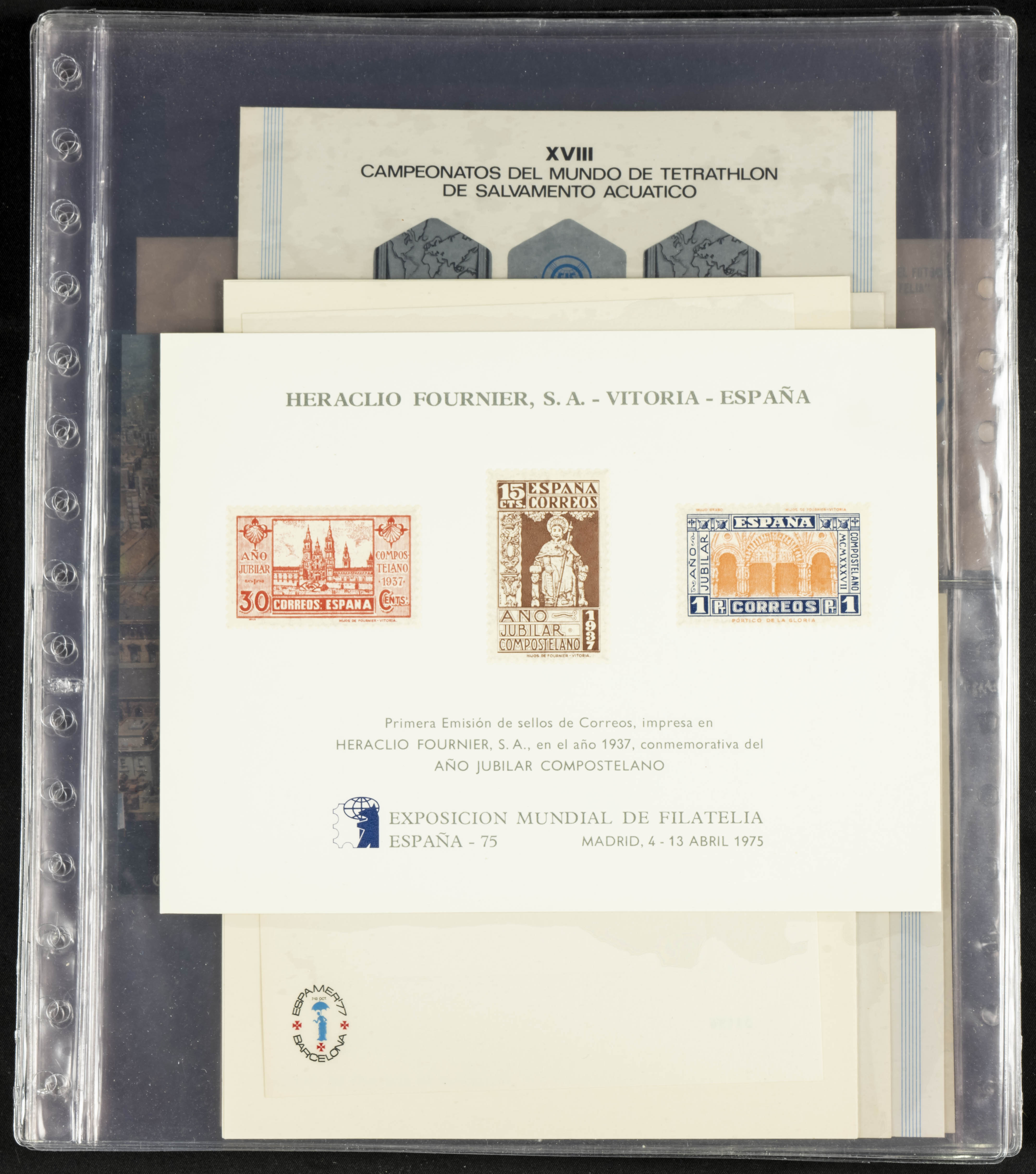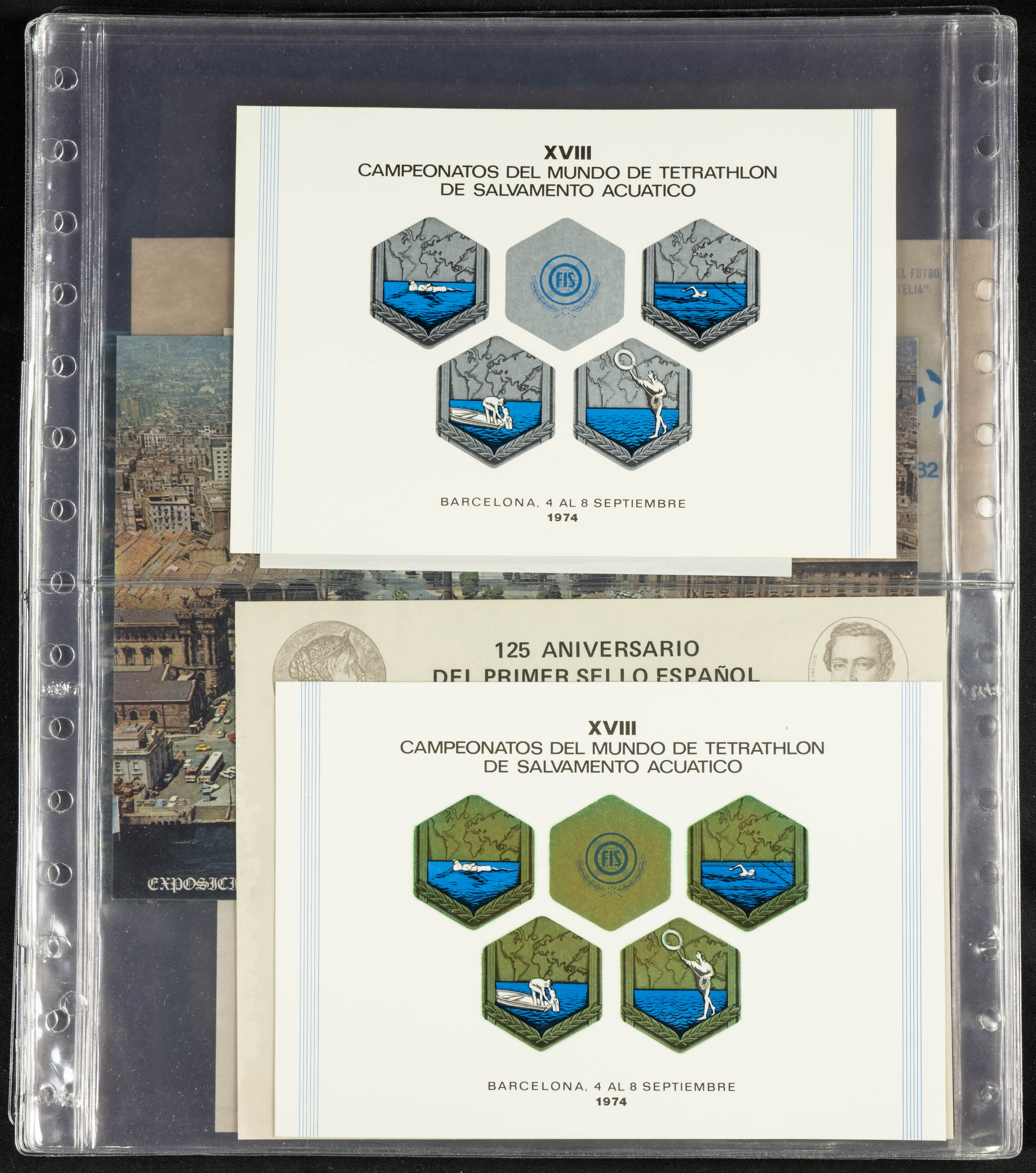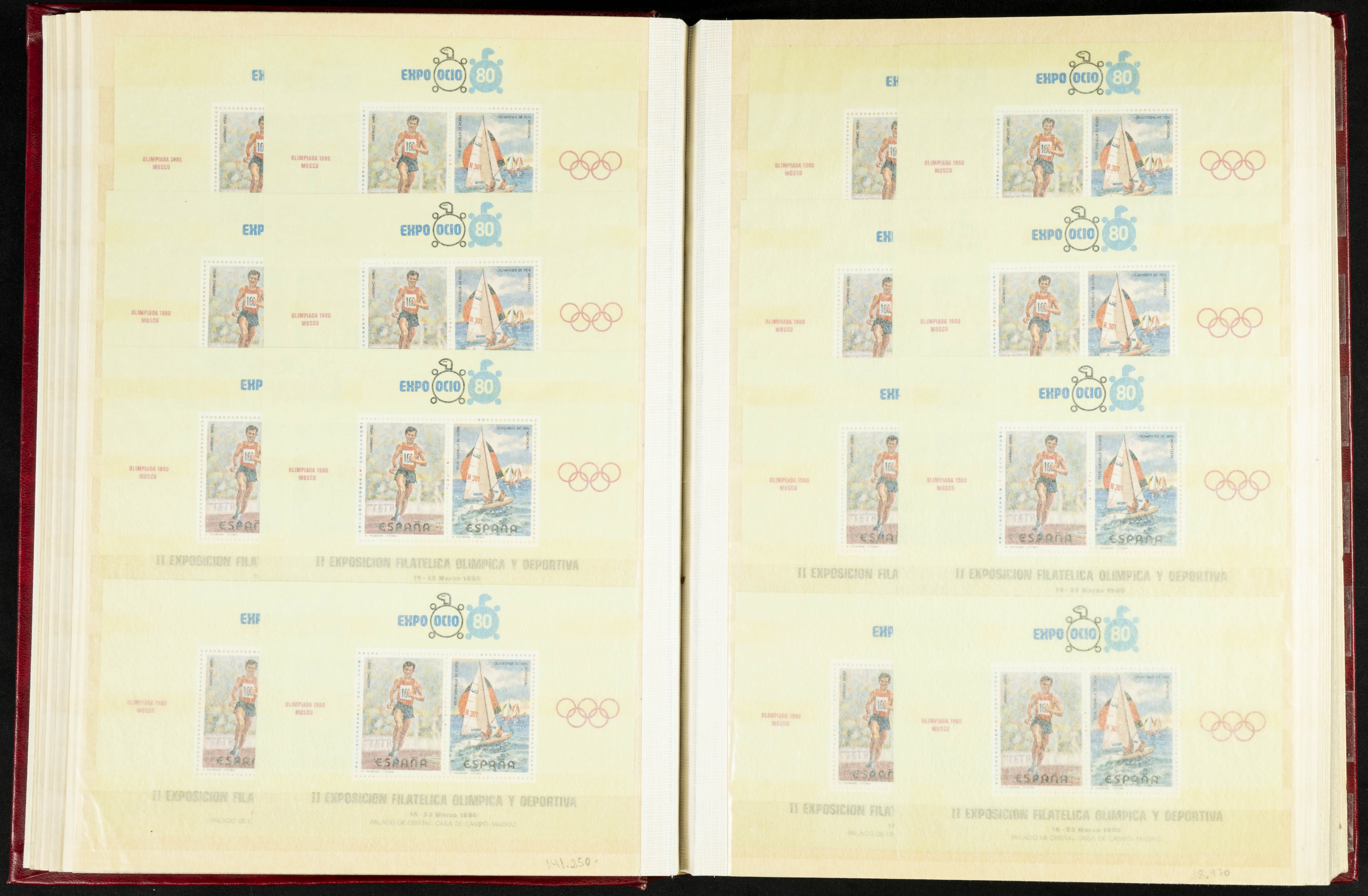 ★★/(1972ca). Conjunto de Hojas Recuerdo entre 1972 y 1982, nuevas (alguna usada) y con algunas repeticiones, incluye al menos cuarenta y cinco juegos de hojitas del Mundial 82 (Sedes) dentadas, veinticuatro juegos sin dentar, azules (dentadas), así como veinticuatro juegos sin dentar de las hojitas de las fases preliminares, entre otras. ALTISIMO VALOR DE CATALOGO. A EXAMINAR.