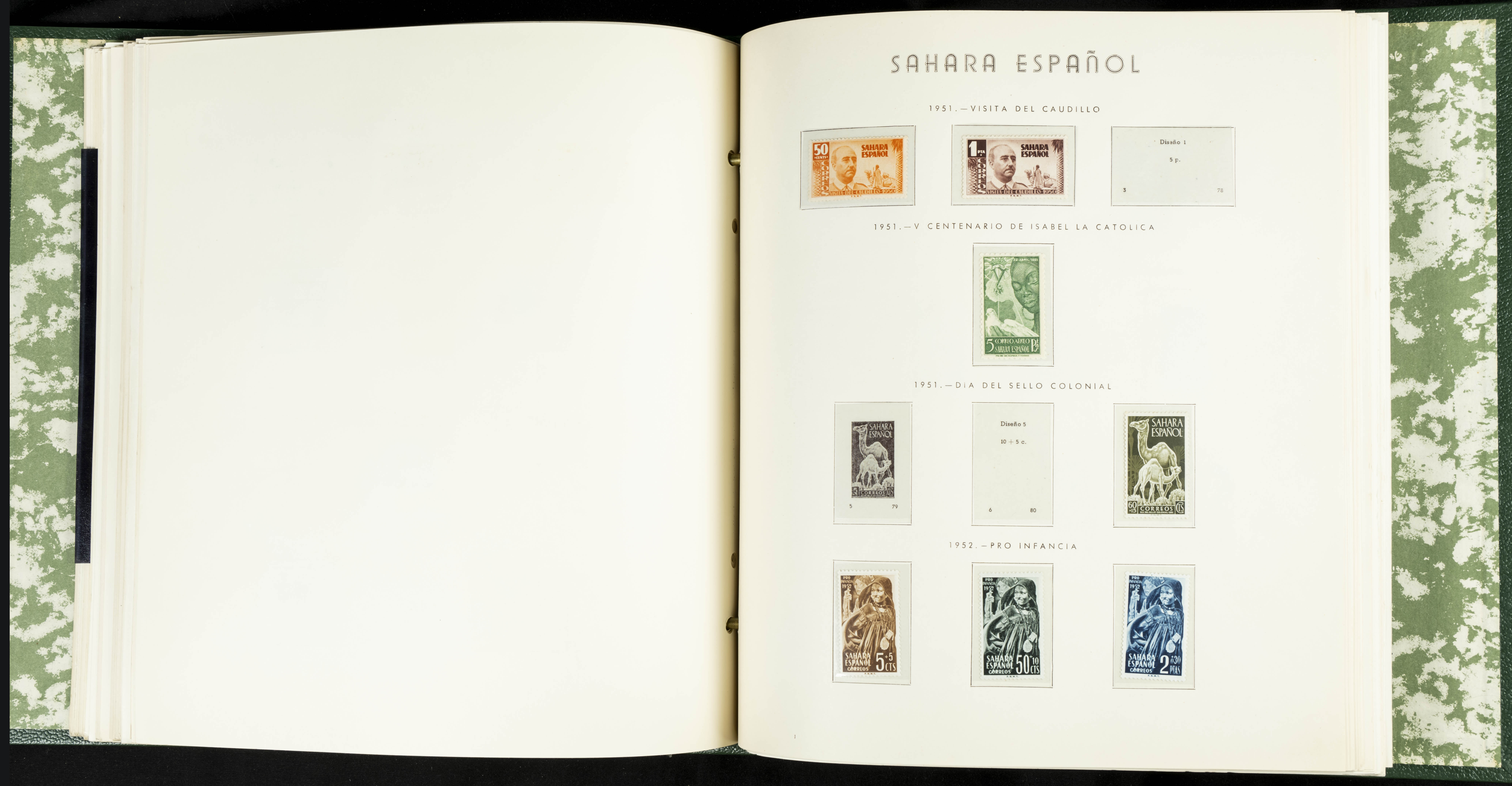 ★★/★(1946ca). Resto de colección muy completa de Colonias Españolas (incluyendo Andorra Española entre 1946 y 1995 completa) entre 1951 y 1975, en nuevo (alguno usado) e incluyendo un juego de hojas sin usar de Edifil entre 1950 y 1975 de Colonias Africanas con canto dorado. A EXAMINAR.