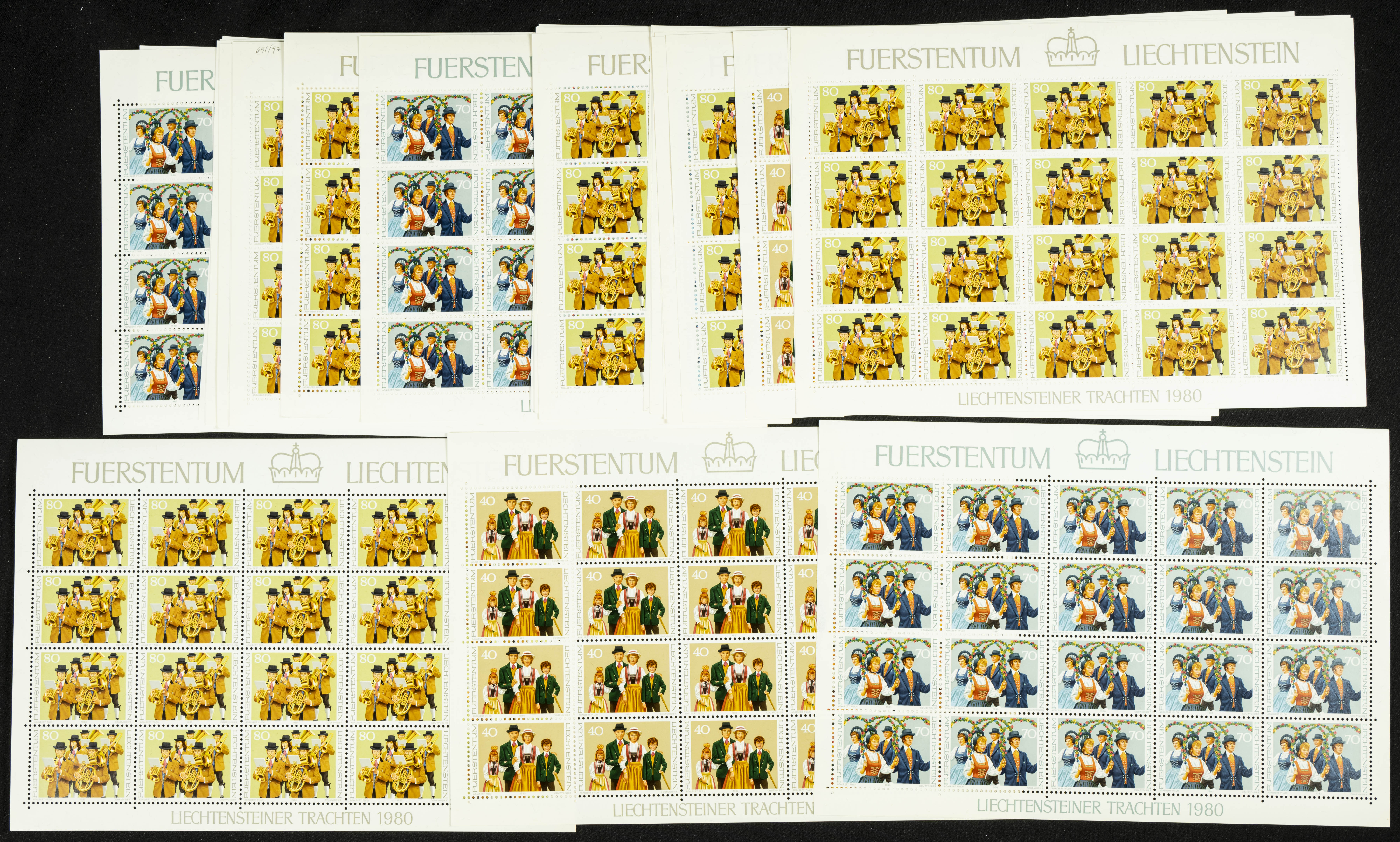 ★★Yvert 695/97(180). 1980. Conjunto de ciento ochenta series completas en minihojas de Liechtenstein TRAJES TIPICOS 1980, en nuevo. A EXAMINAR. Yvert 2024: 540 Euros