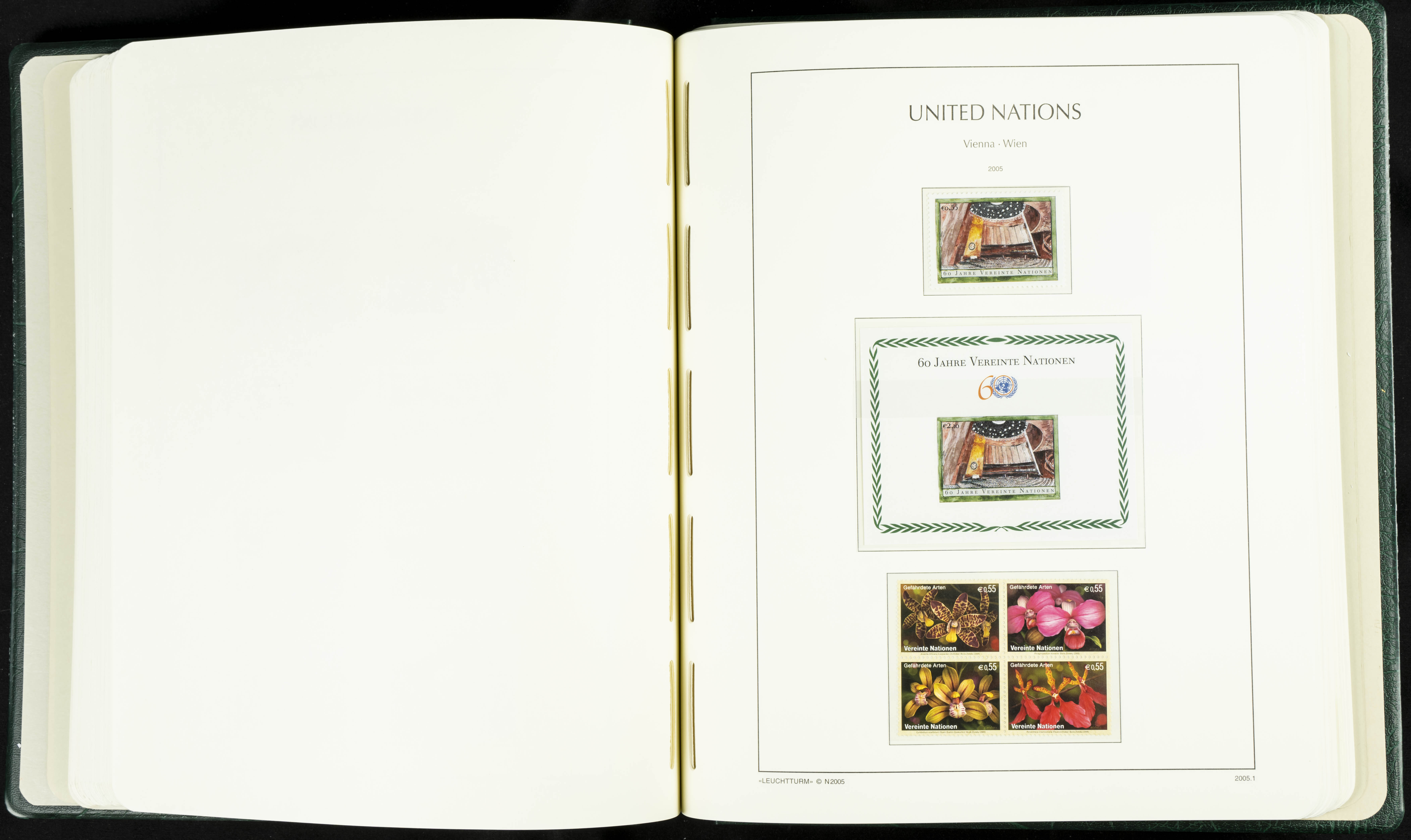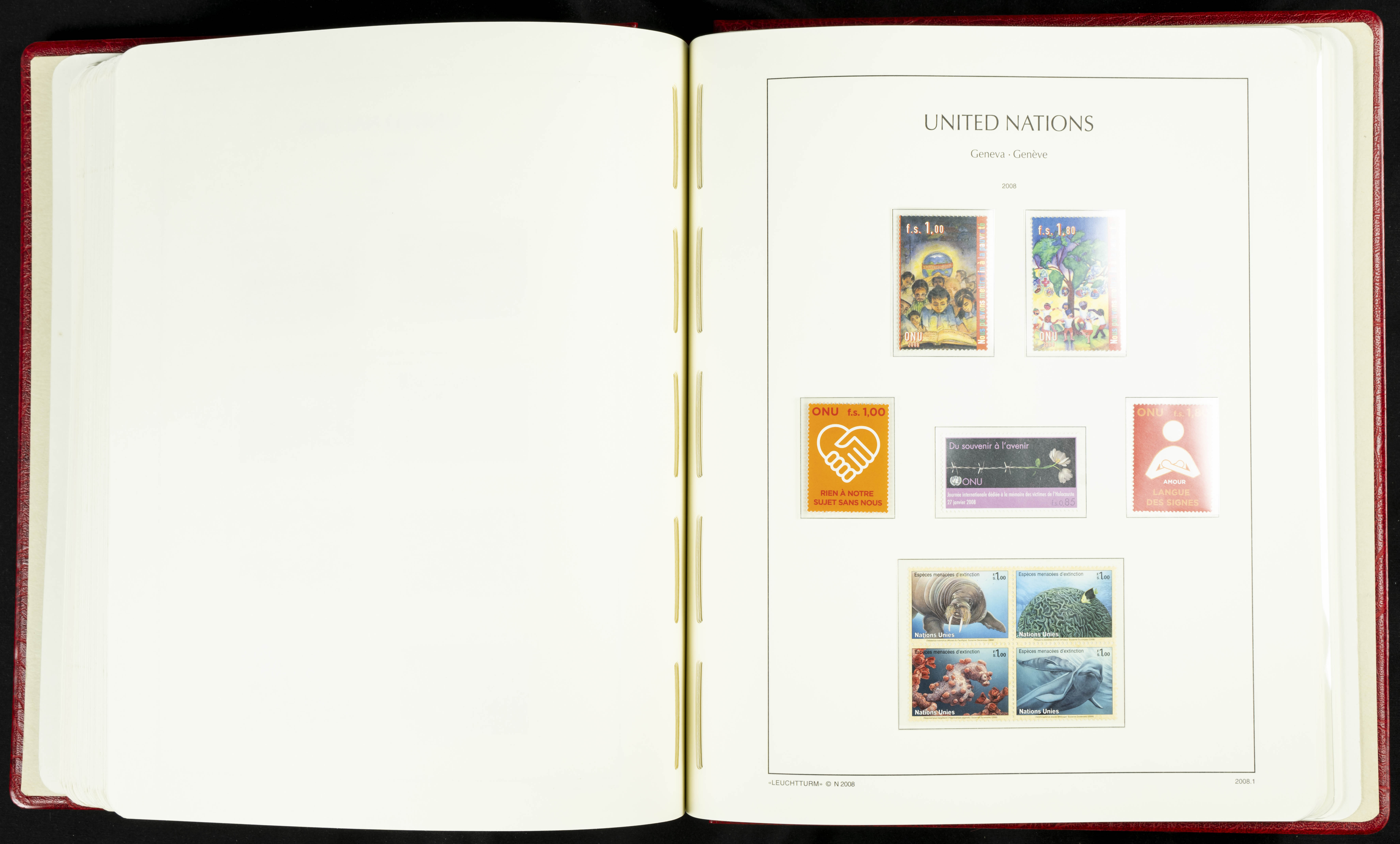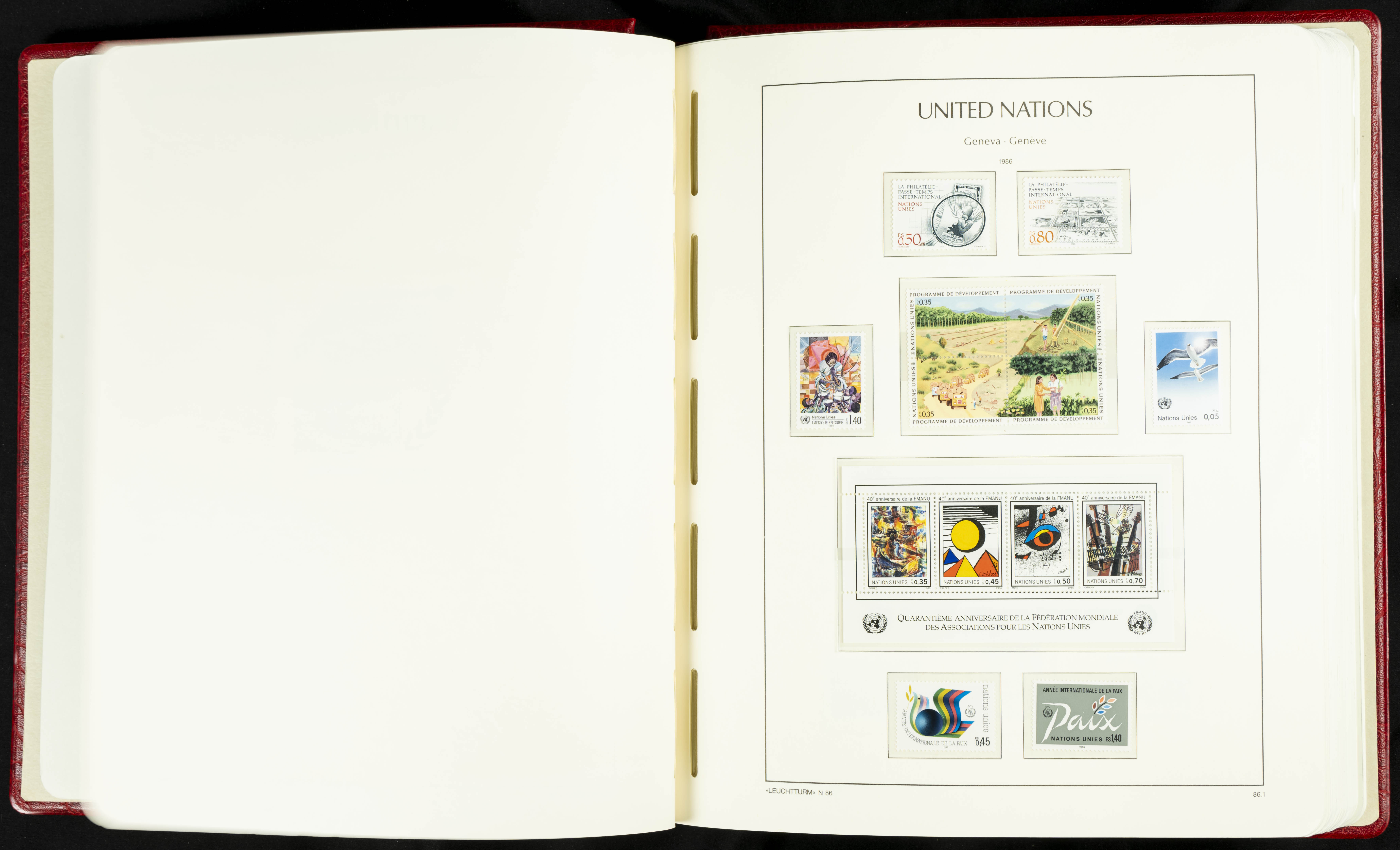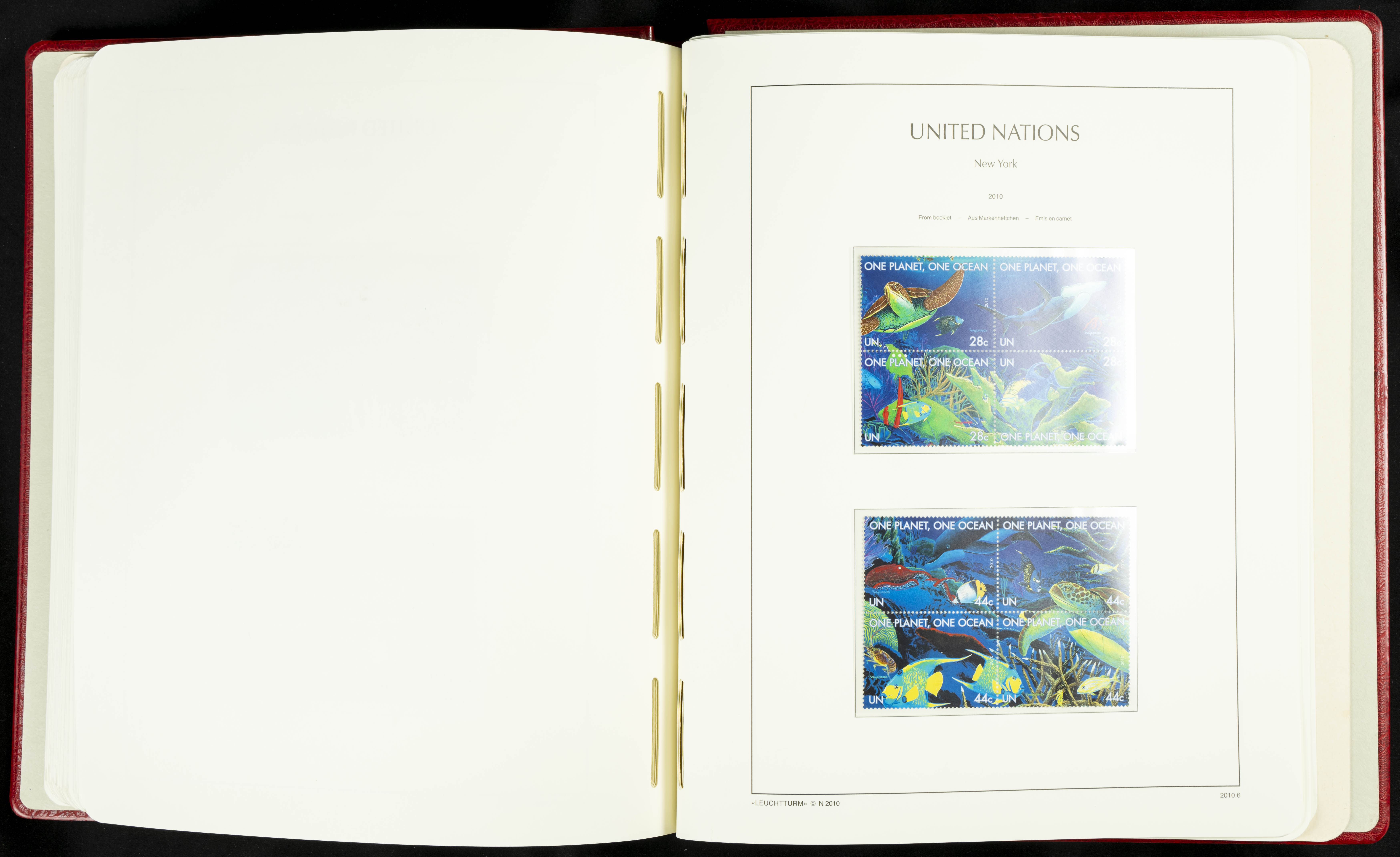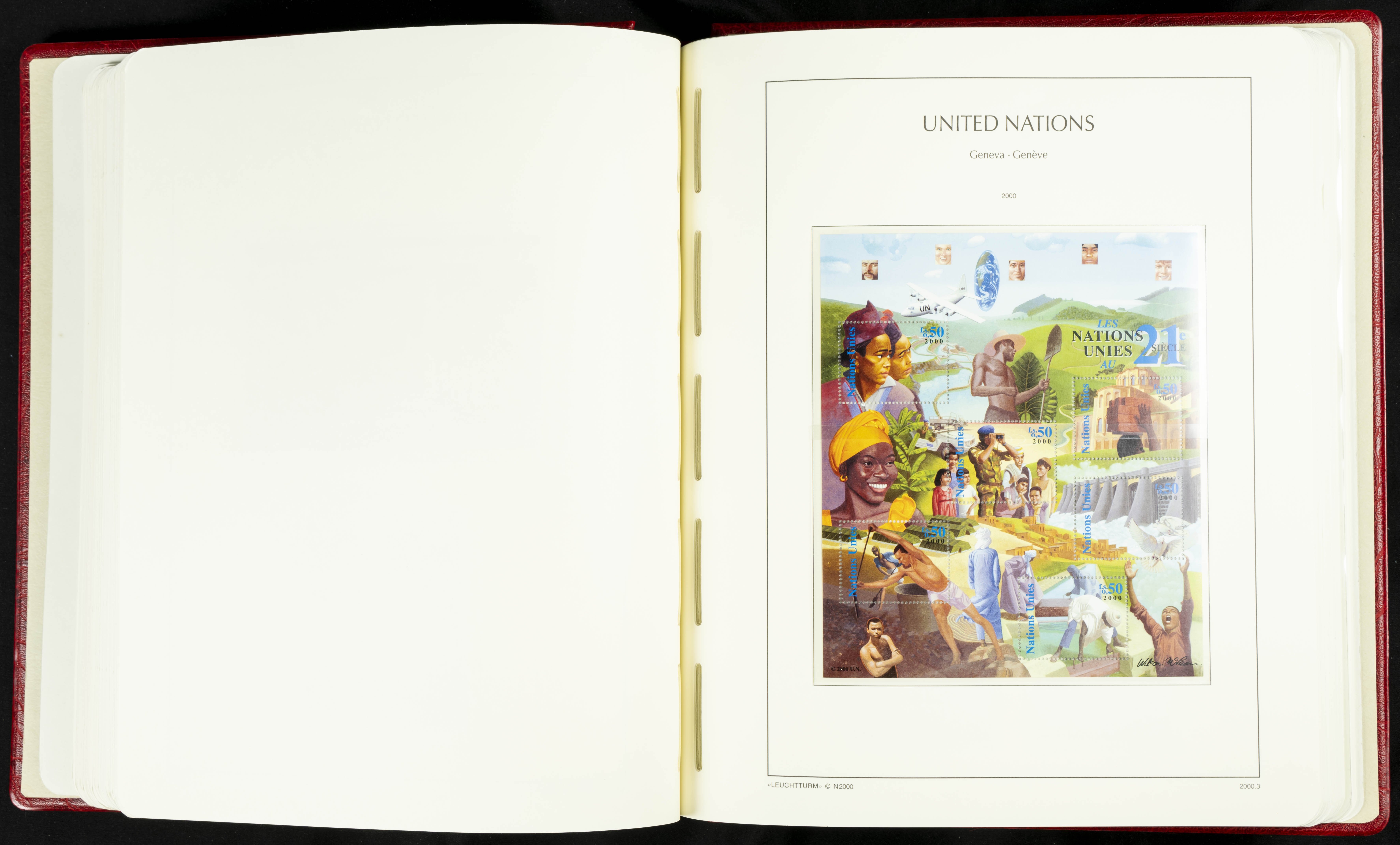 ★★(1951ca). Colección completa de Naciones Unidas (Nueva York, Ginebra y Viena) entre 1951 y 2011, en nuevo y sin fijasellos (montada en álbumes Faro). ALTO VALOR DE CATALOGO. A EXAMINAR.