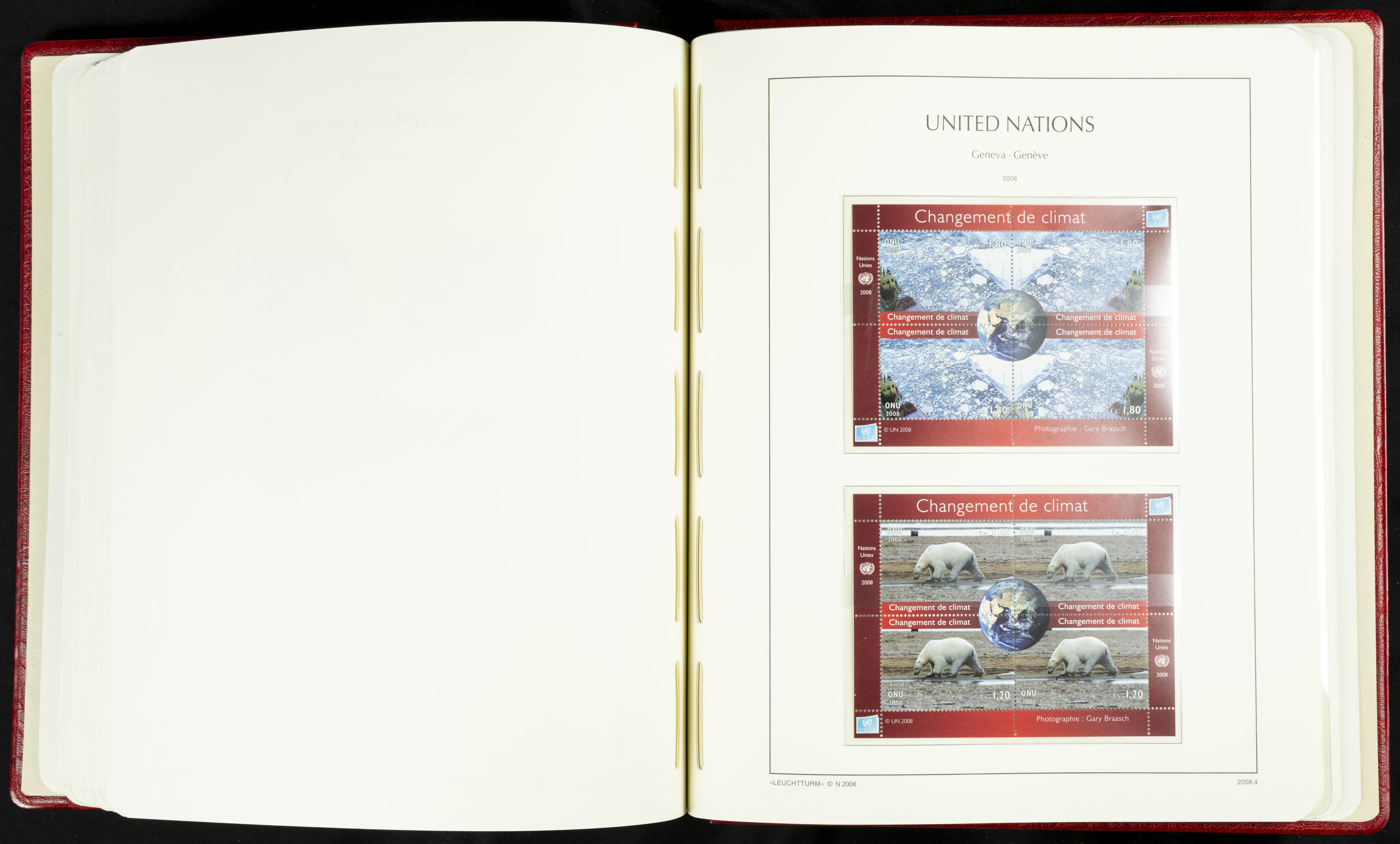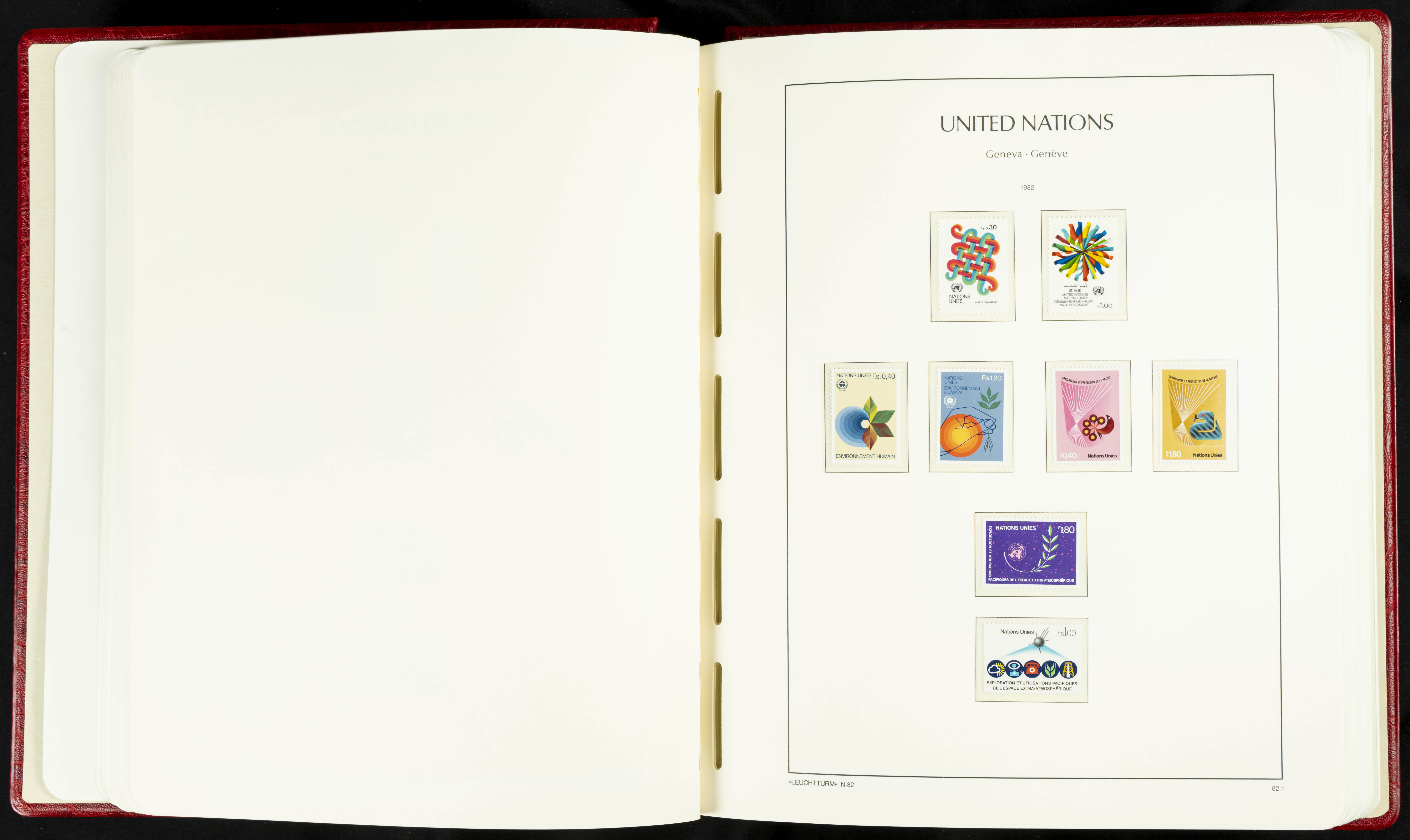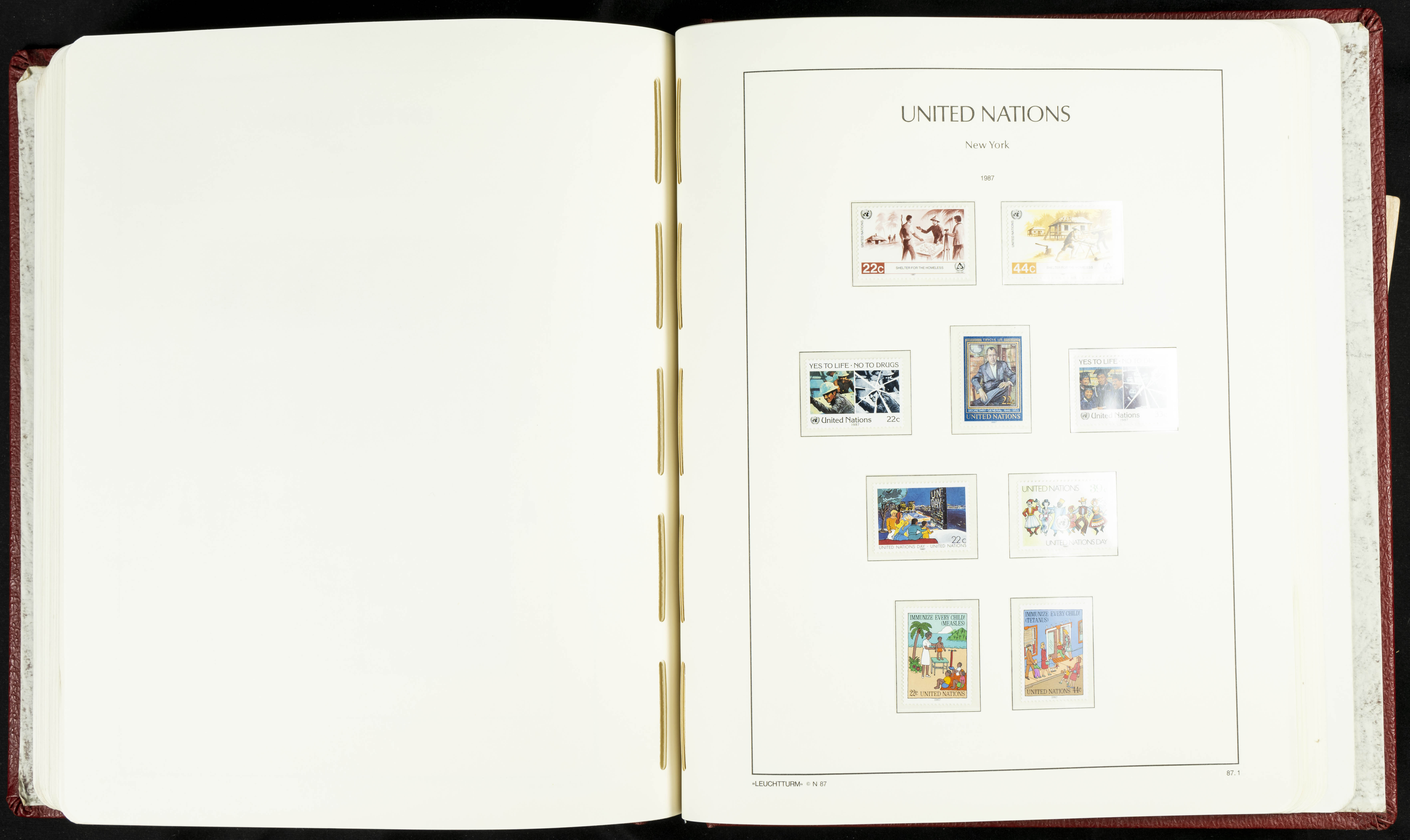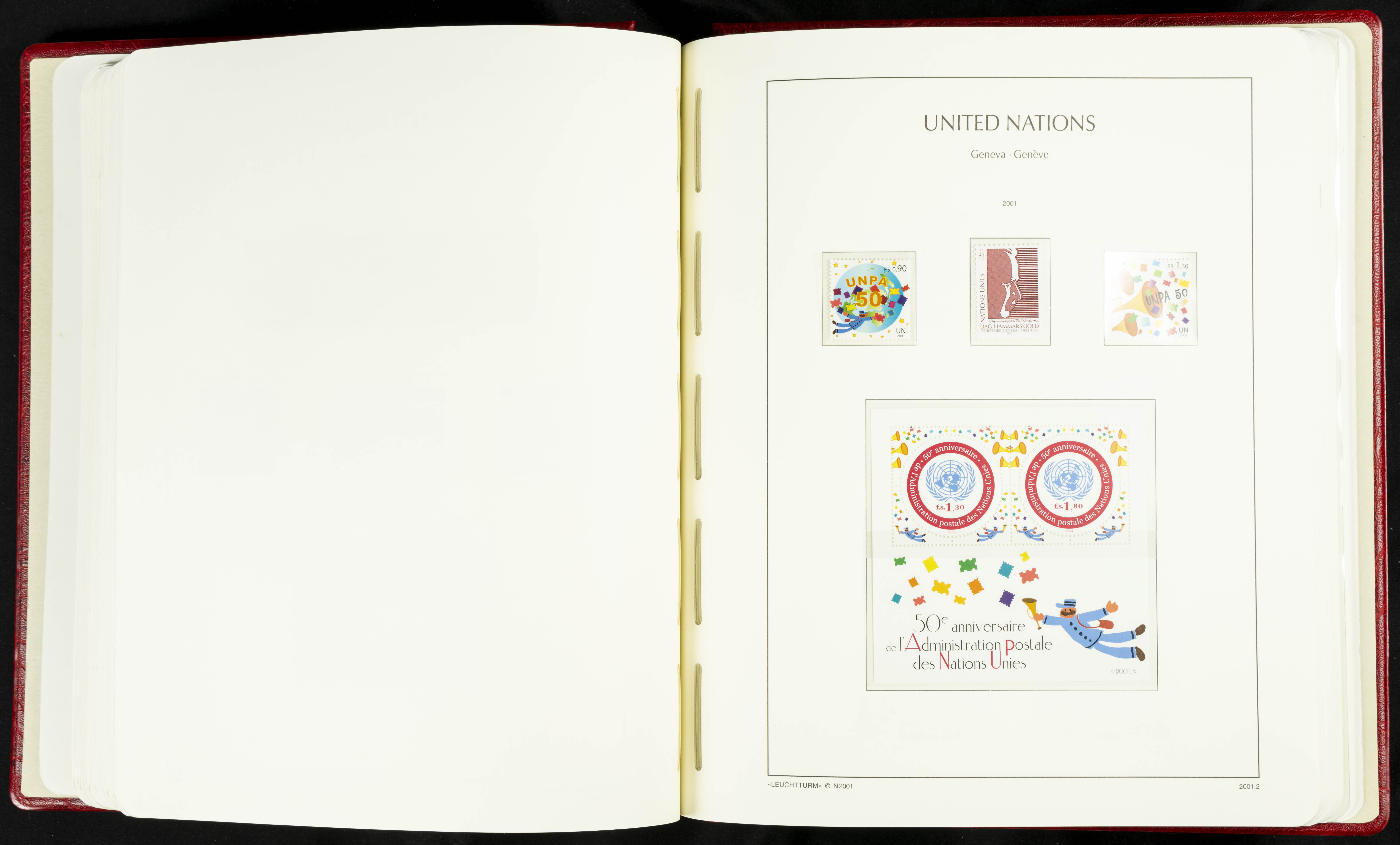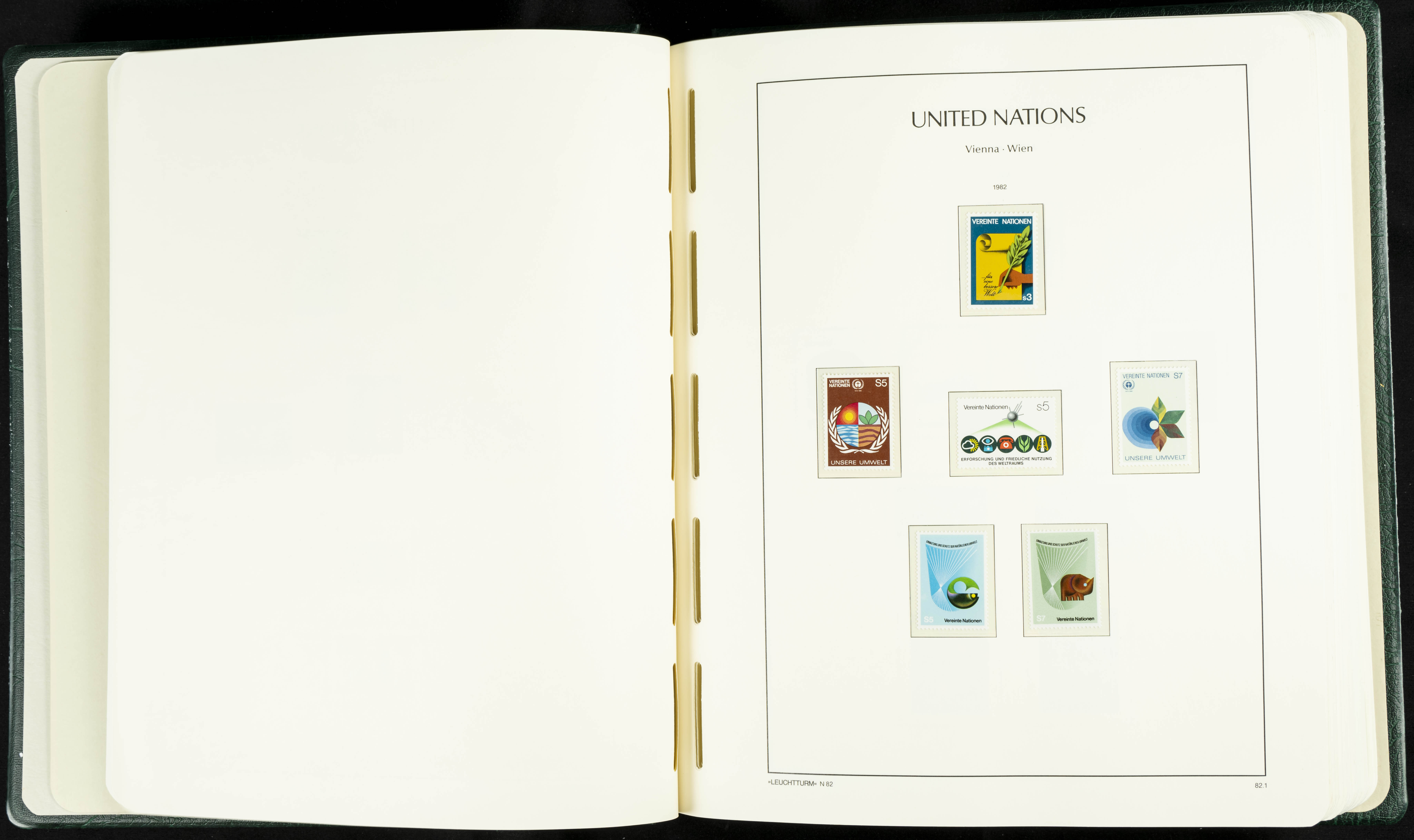 ★★(1951ca). Colección completa de Naciones Unidas (Nueva York, Ginebra y Viena) entre 1951 y 2011, en nuevo y sin fijasellos (montada en álbumes Faro). ALTO VALOR DE CATALOGO. A EXAMINAR.