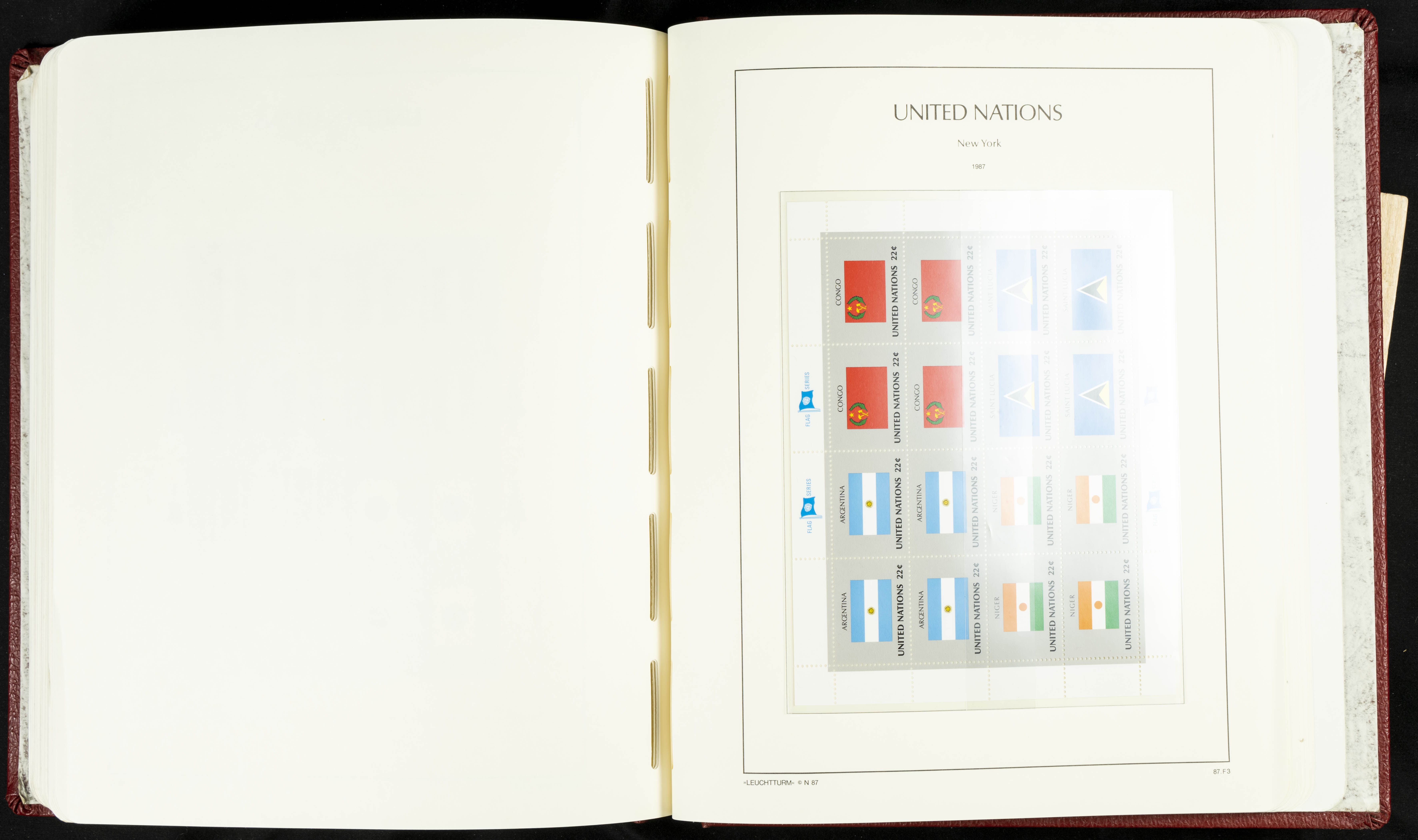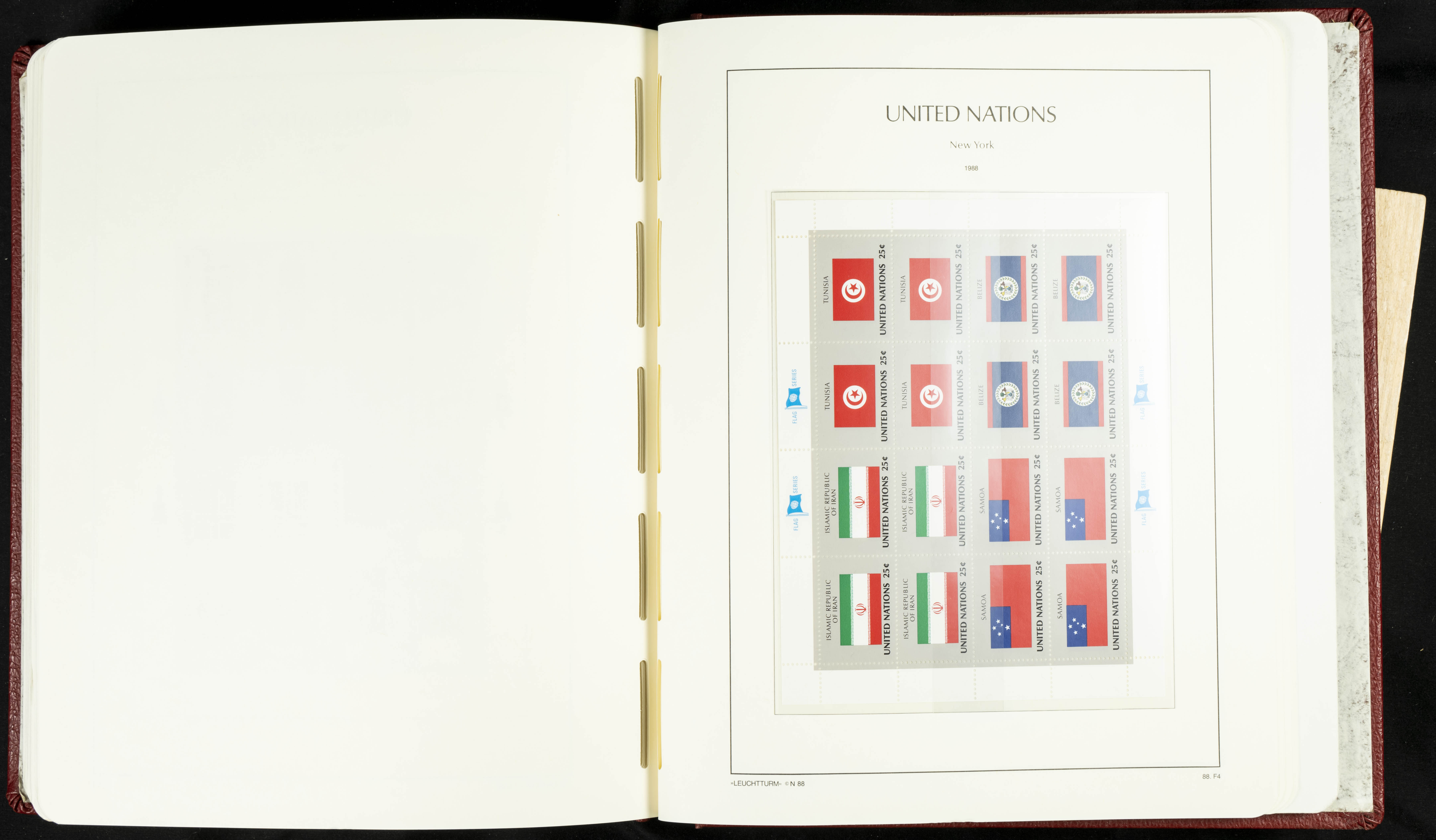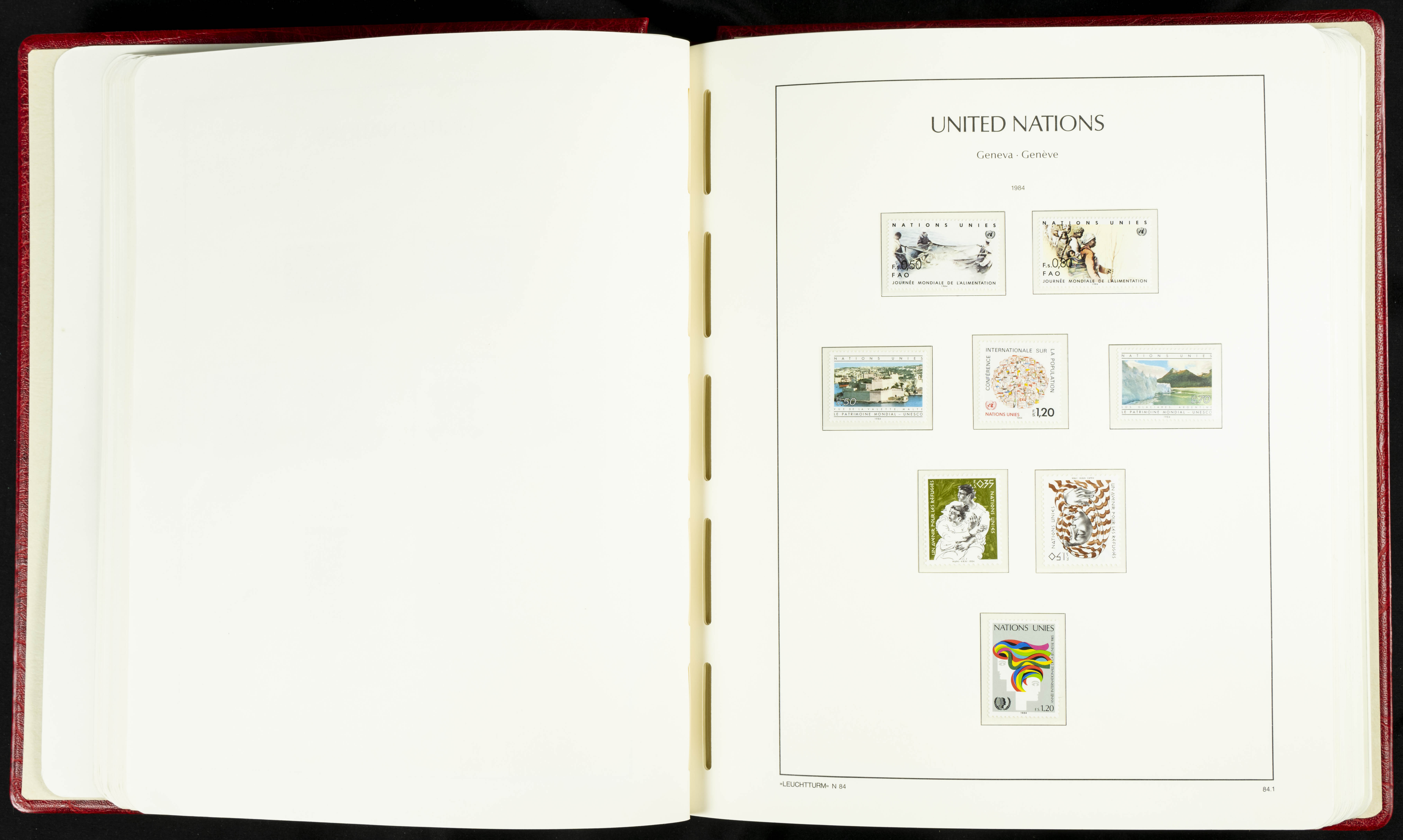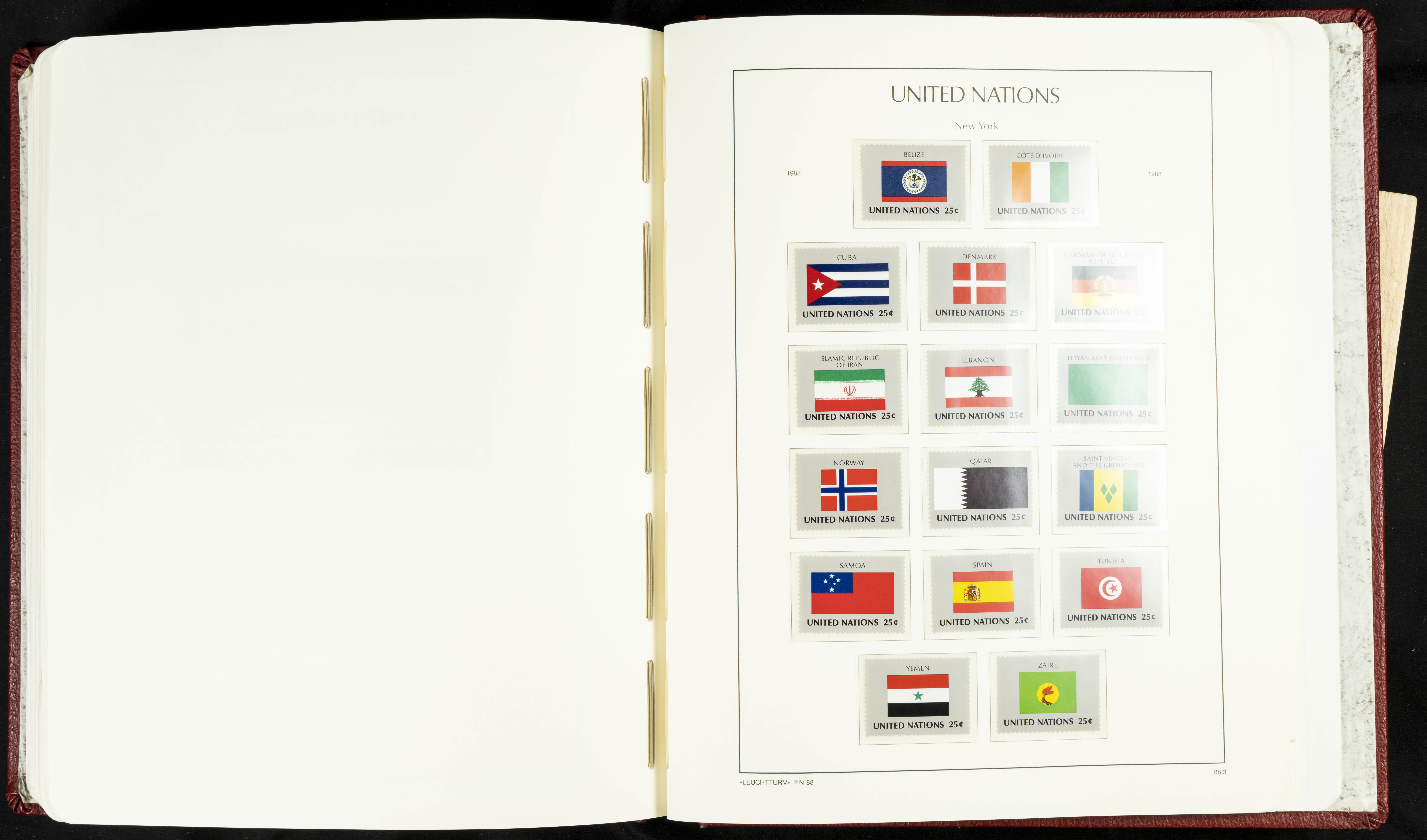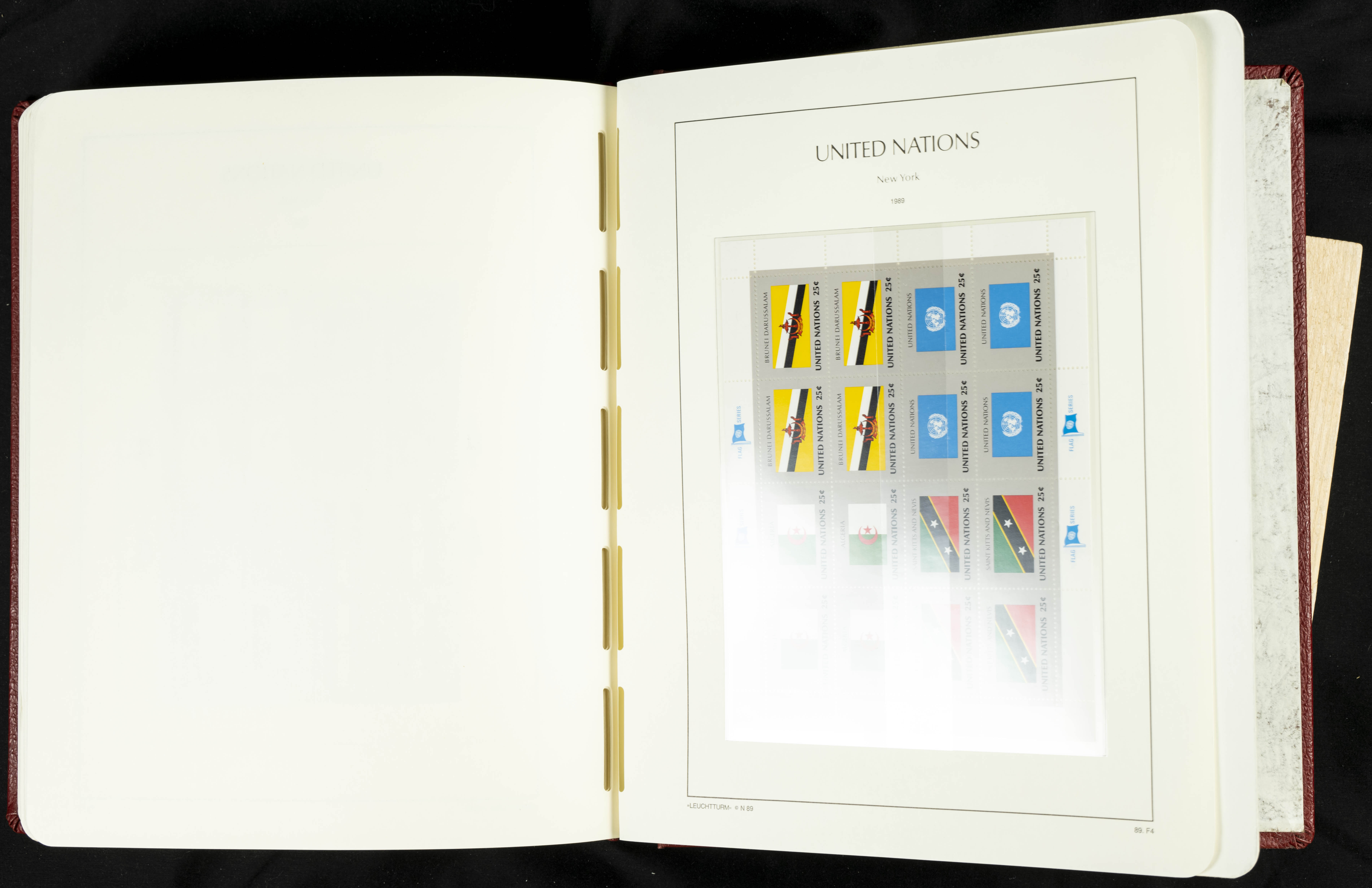 ★★(1951ca). Colección completa de Naciones Unidas (Nueva York, Ginebra y Viena) entre 1951 y 2011, en nuevo y sin fijasellos (montada en álbumes Faro). ALTO VALOR DE CATALOGO. A EXAMINAR.