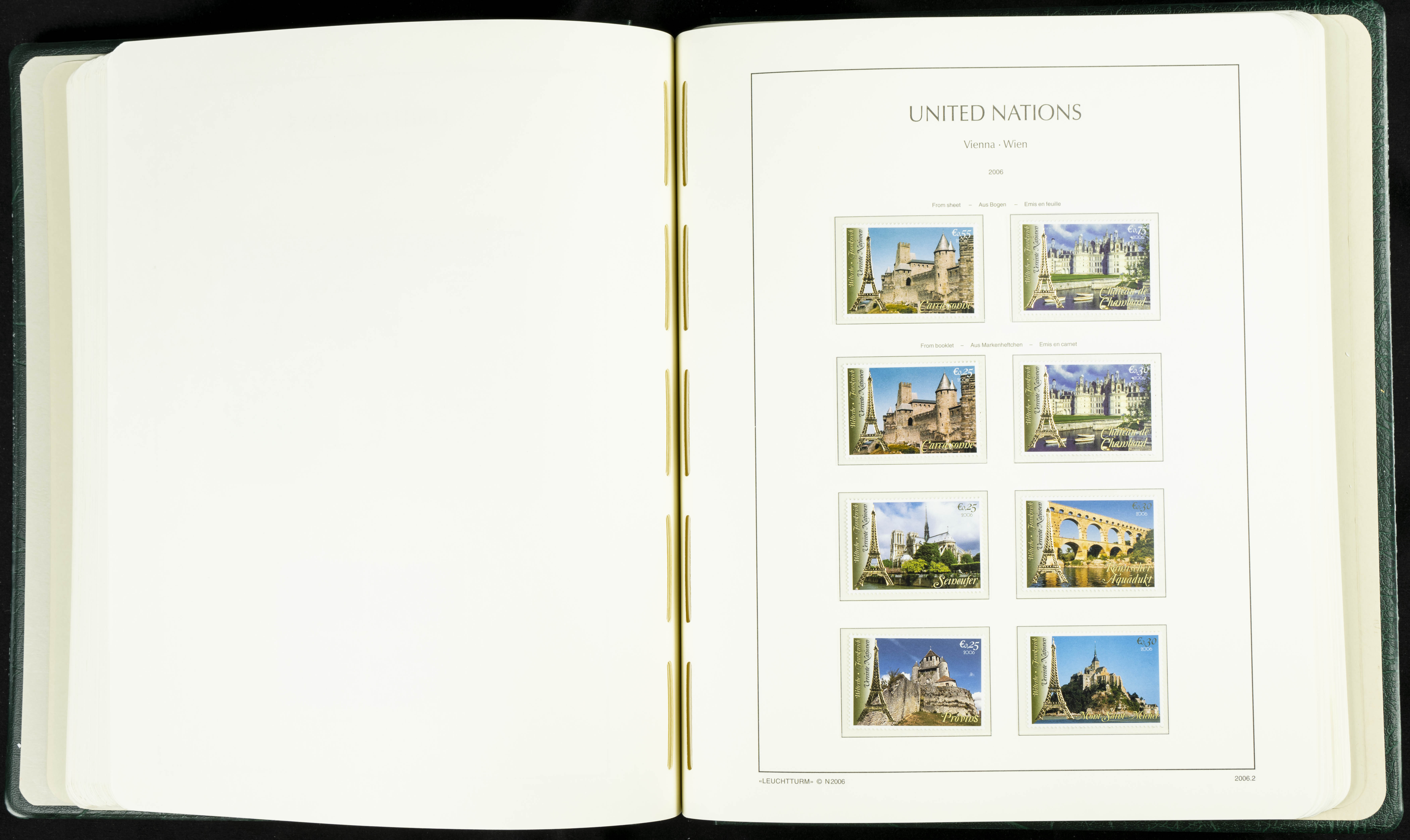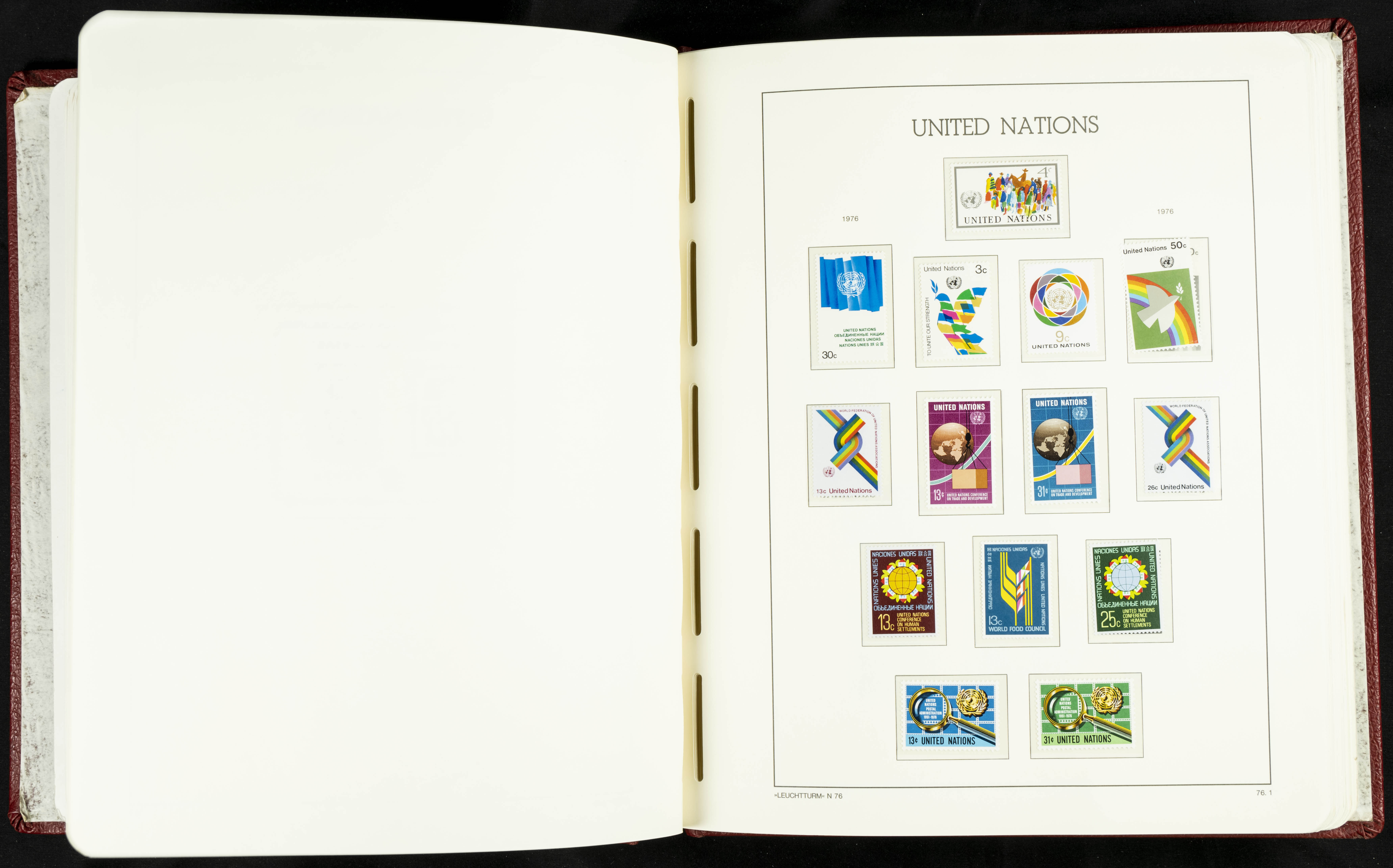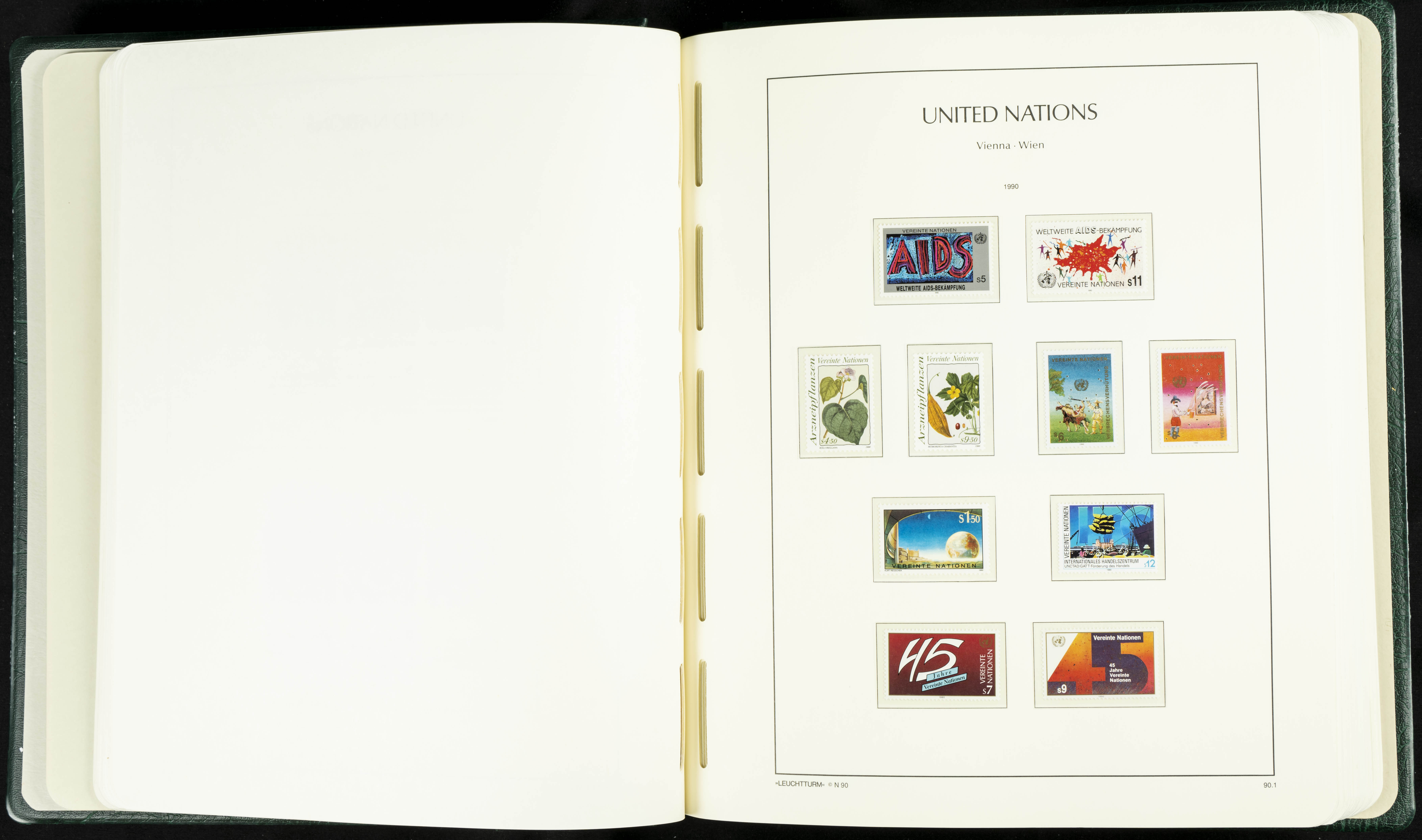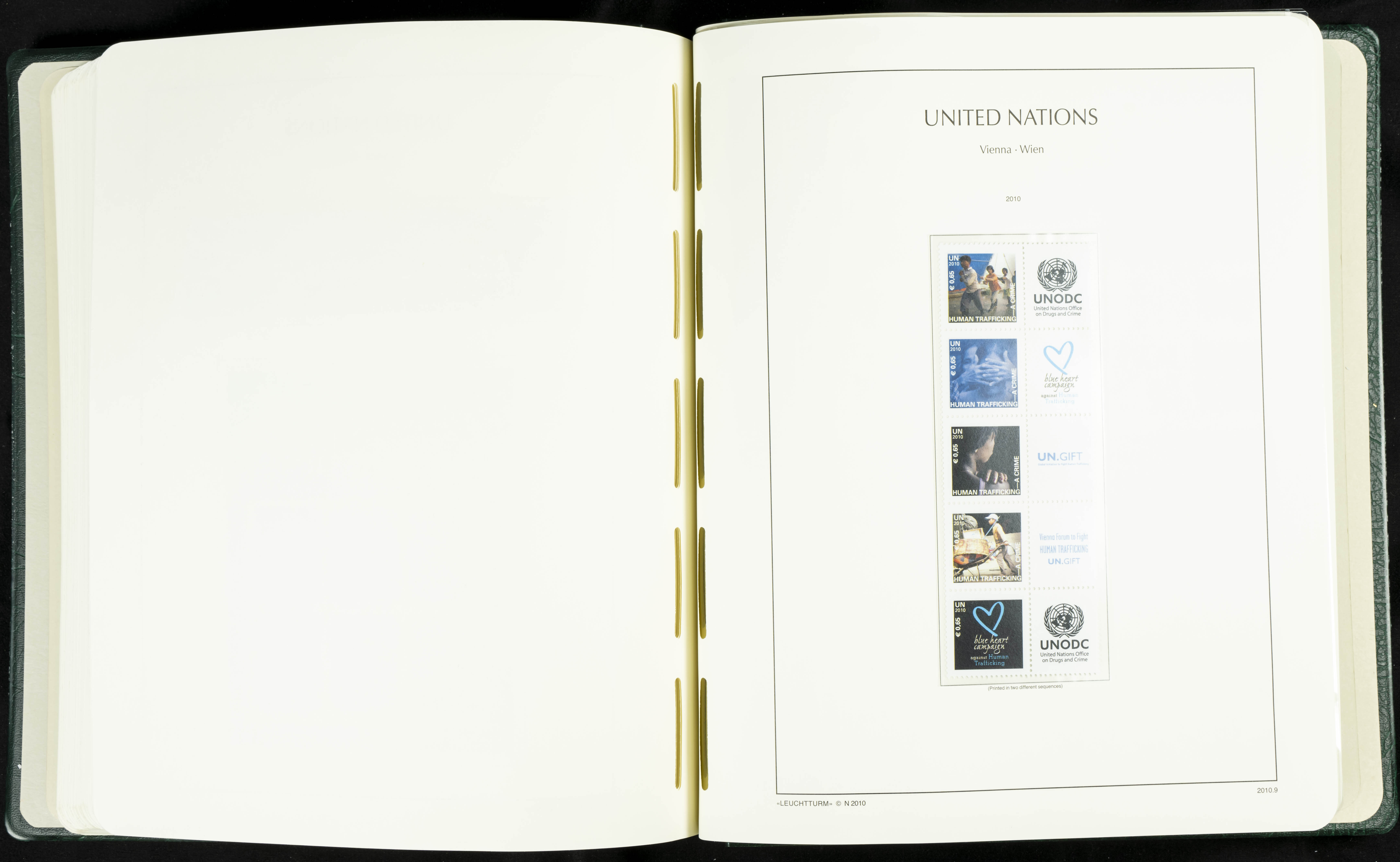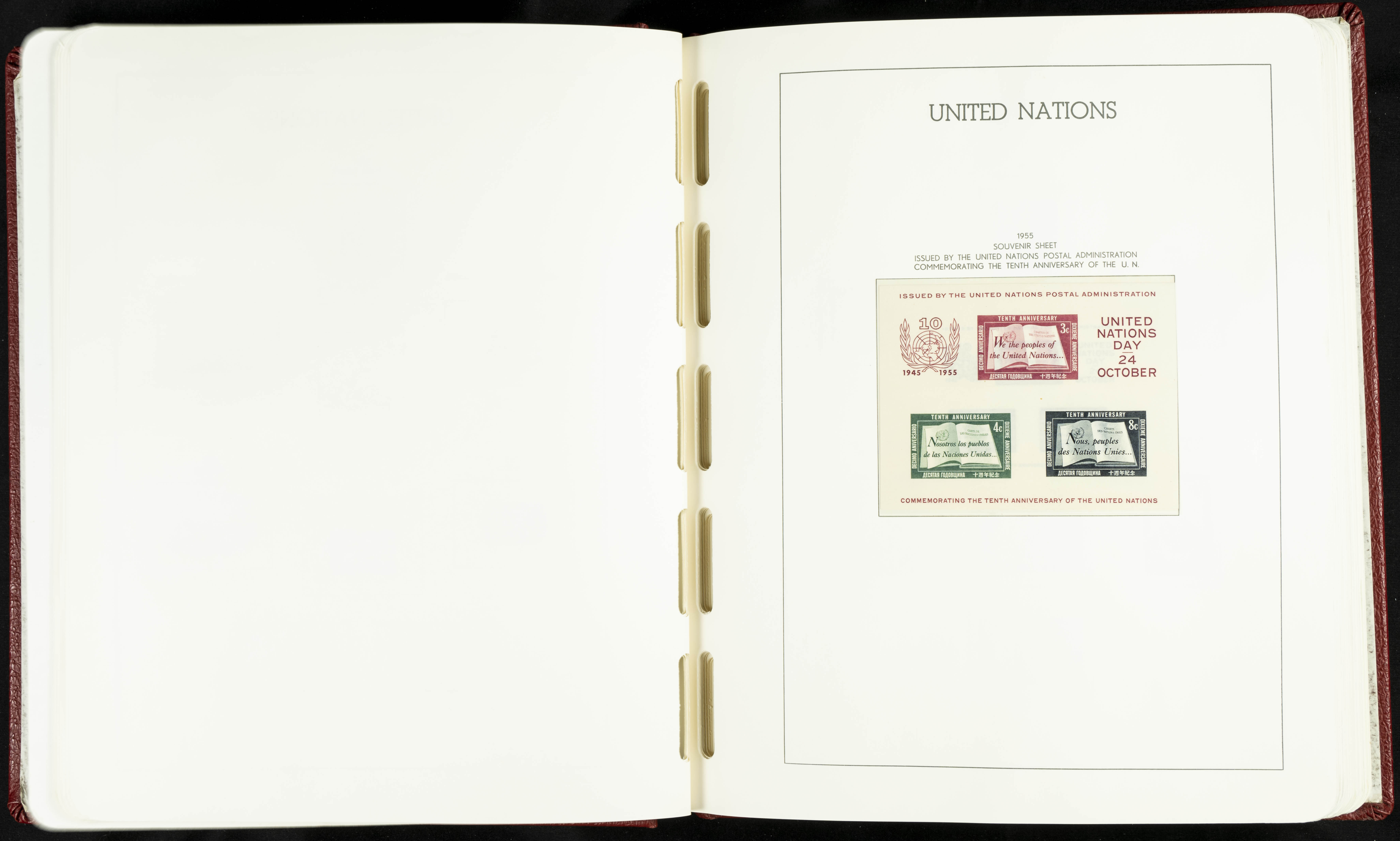★★(1951ca). Colección completa de Naciones Unidas (Nueva York, Ginebra y Viena) entre 1951 y 2011, en nuevo y sin fijasellos (montada en álbumes Faro). ALTO VALOR DE CATALOGO. A EXAMINAR.