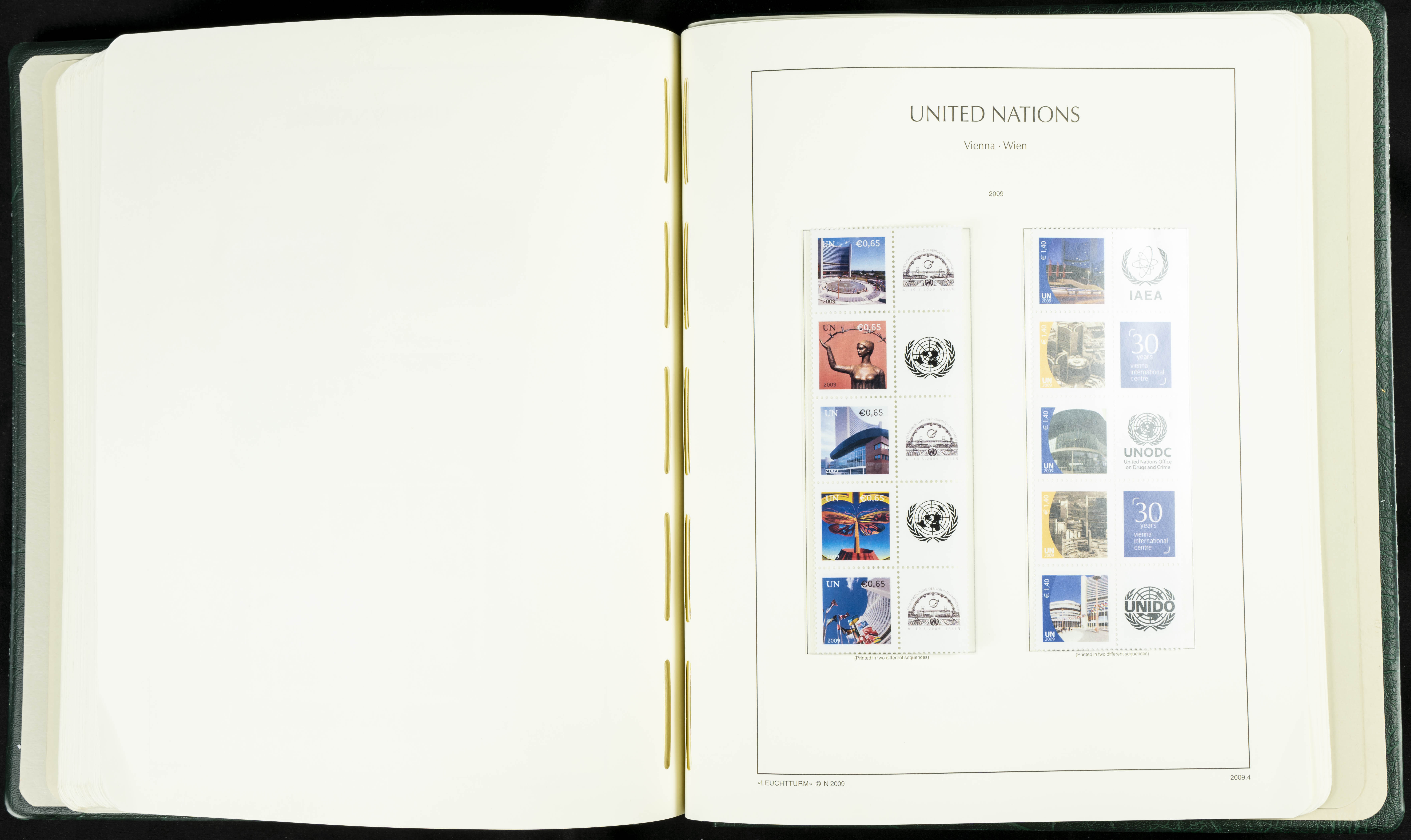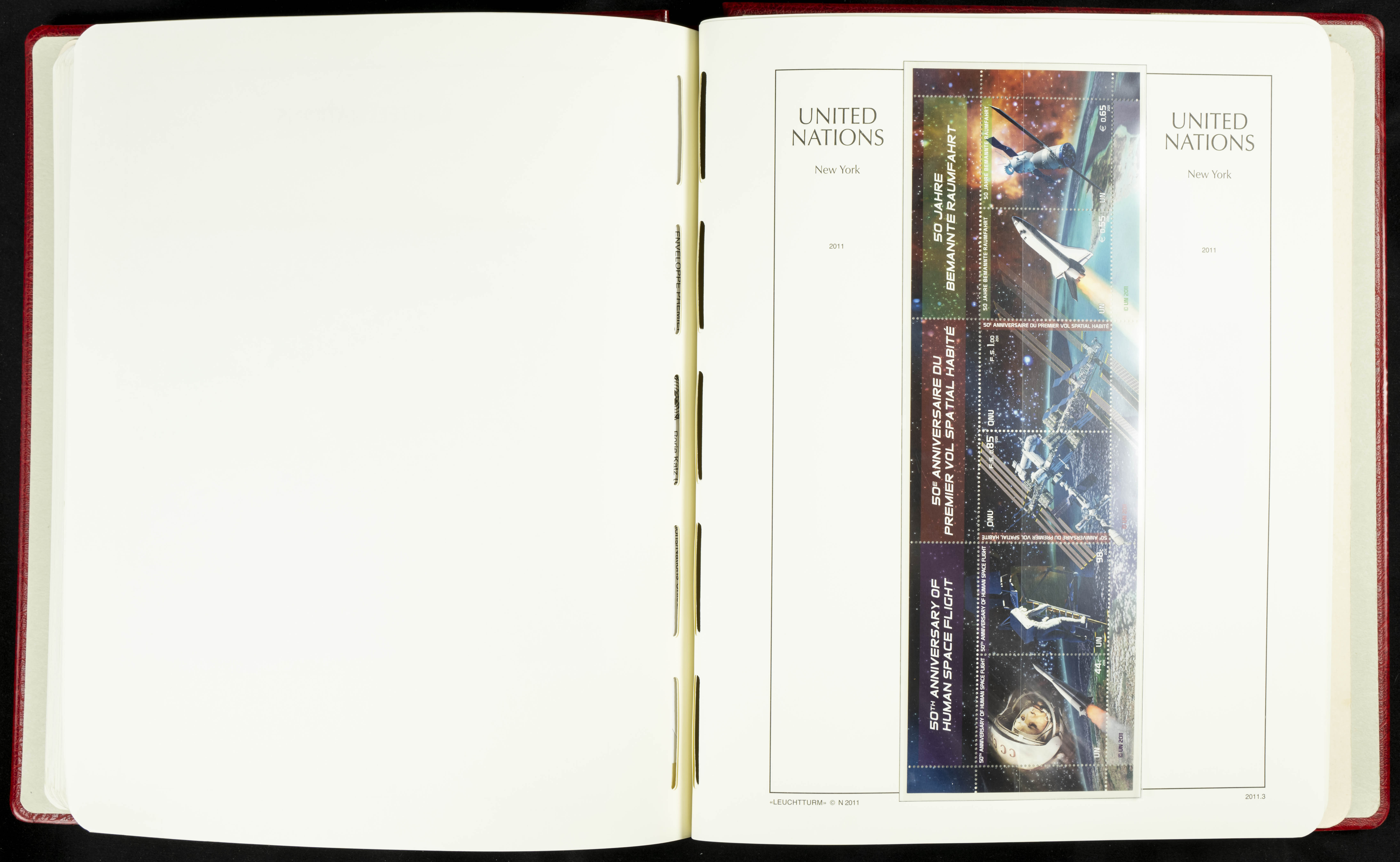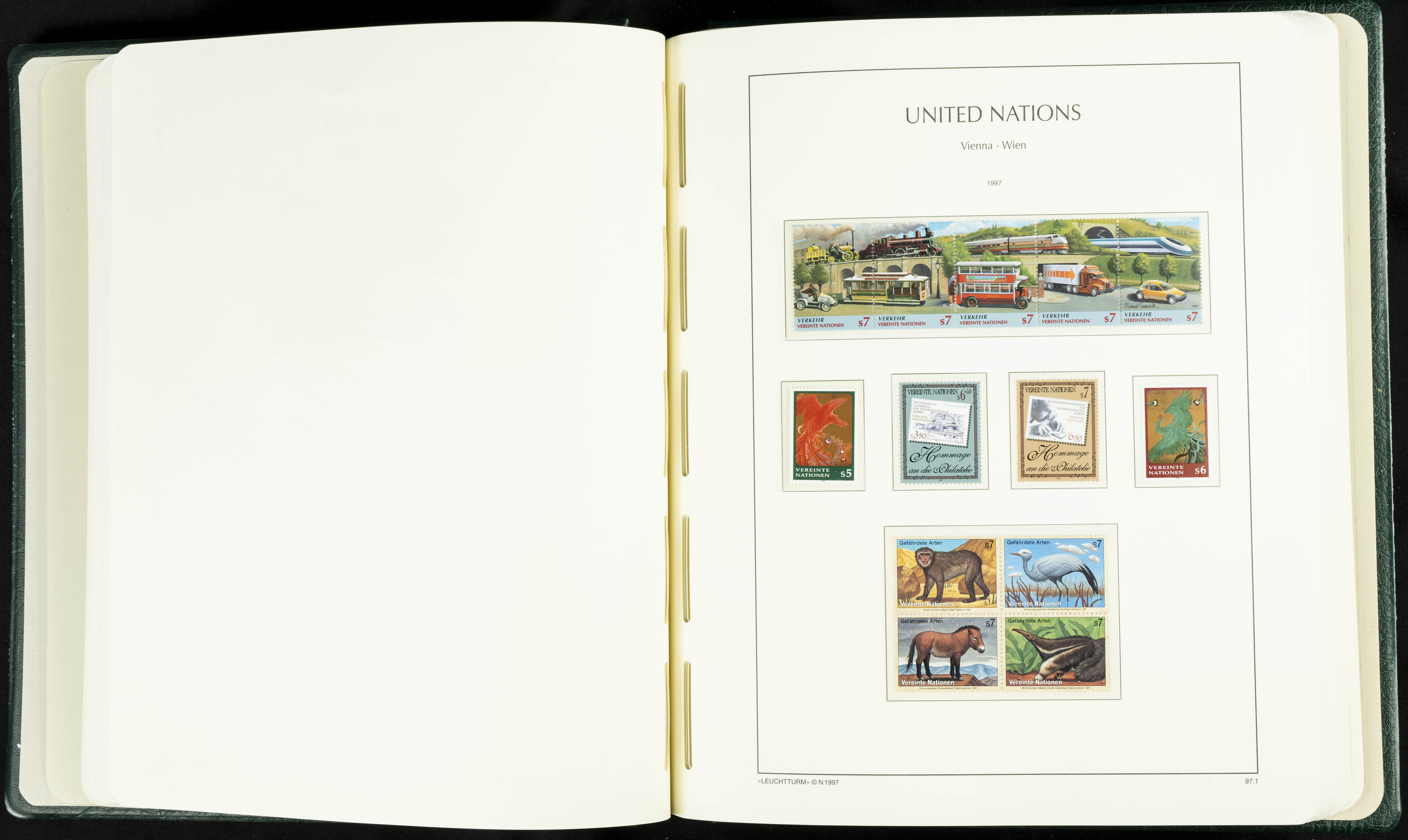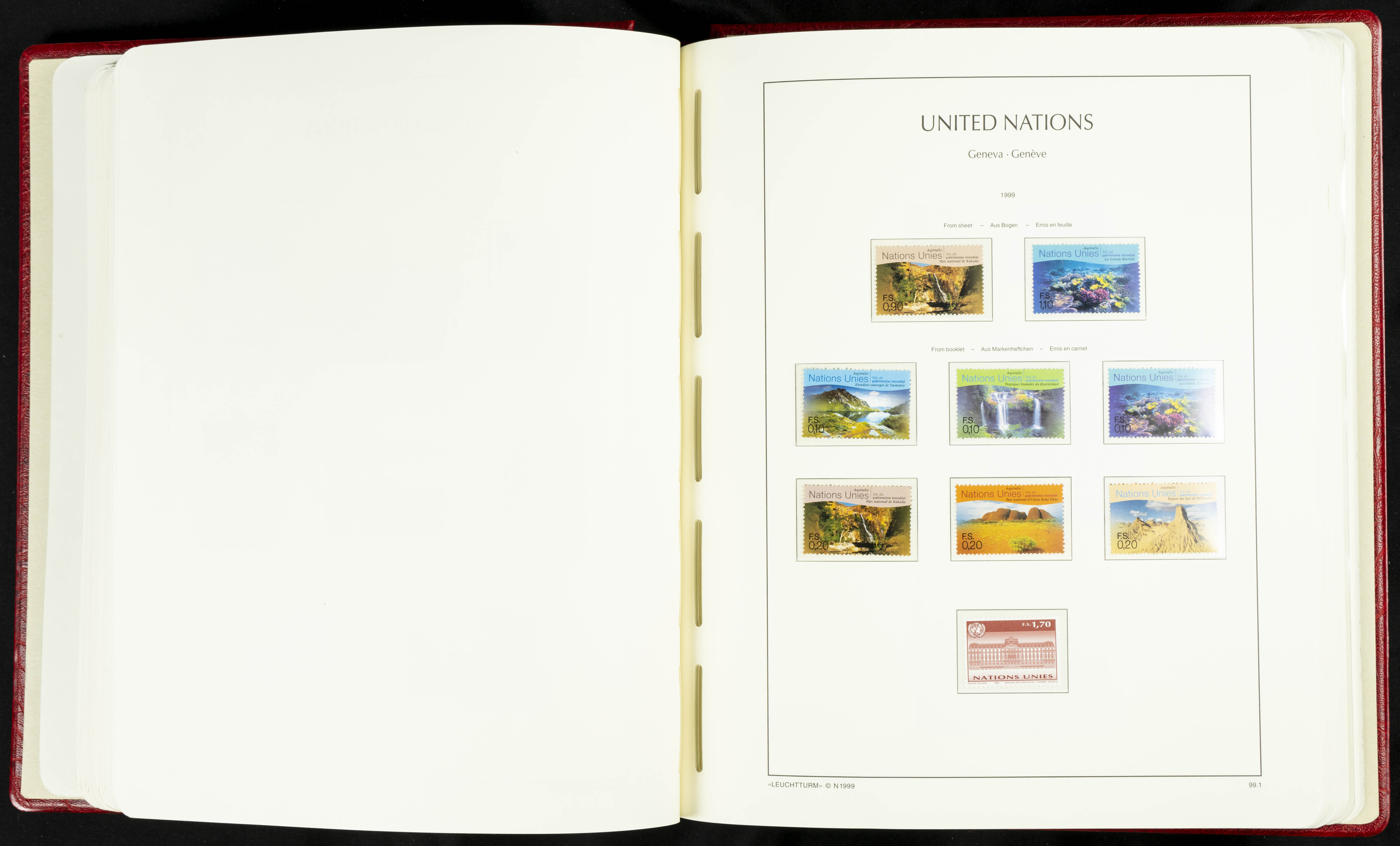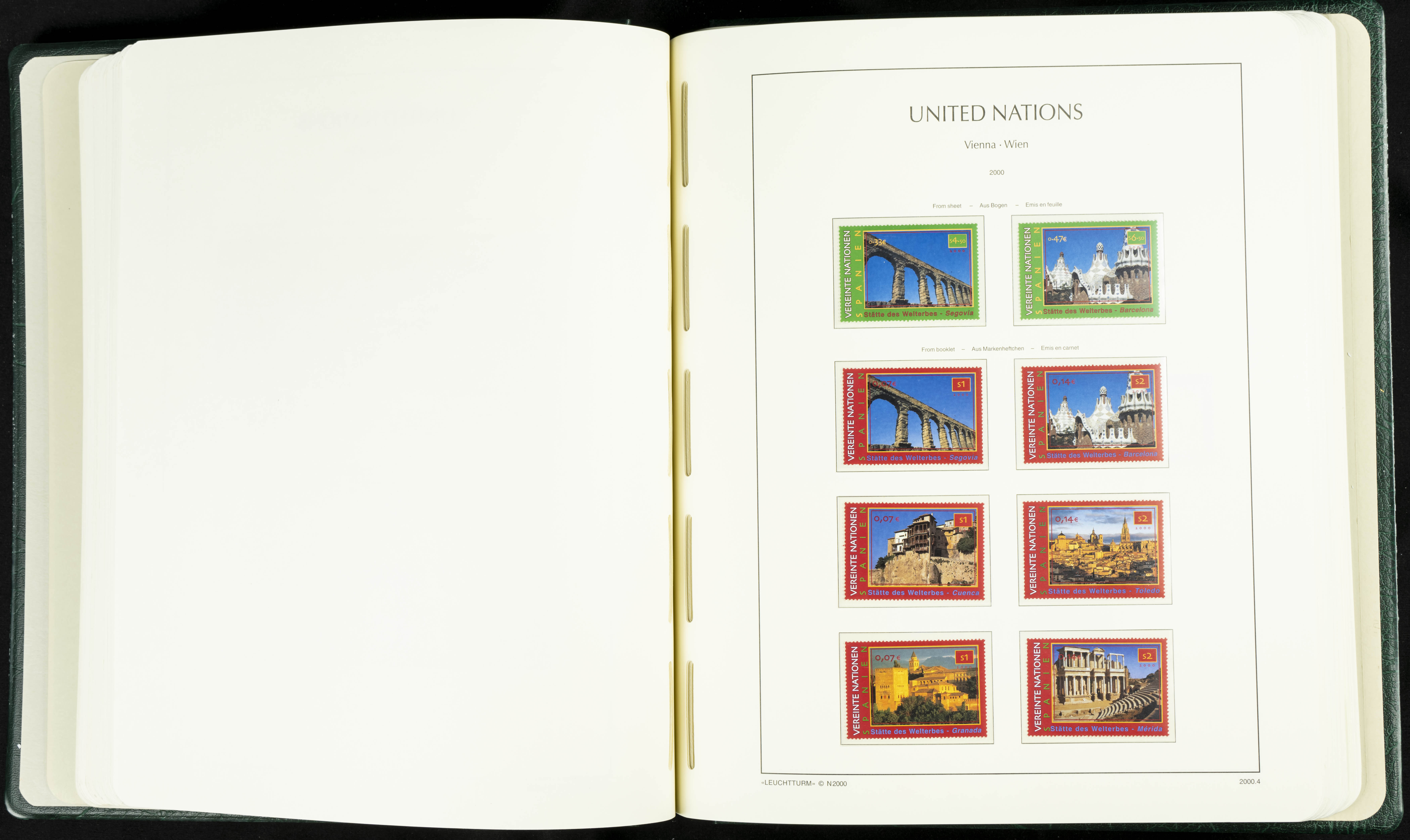★★(1951ca). Colección completa de Naciones Unidas (Nueva York, Ginebra y Viena) entre 1951 y 2011, en nuevo y sin fijasellos (montada en álbumes Faro). ALTO VALOR DE CATALOGO. A EXAMINAR.