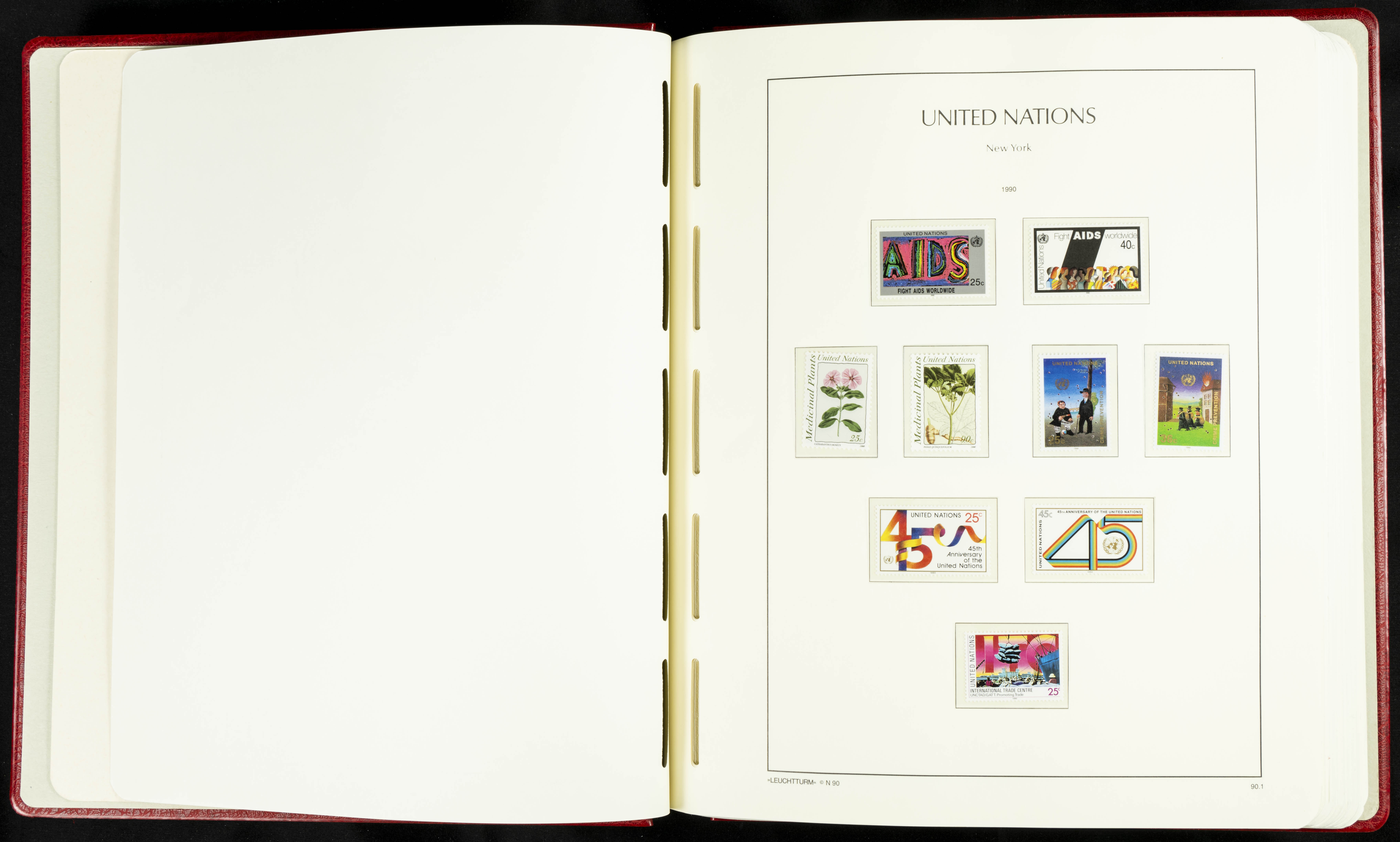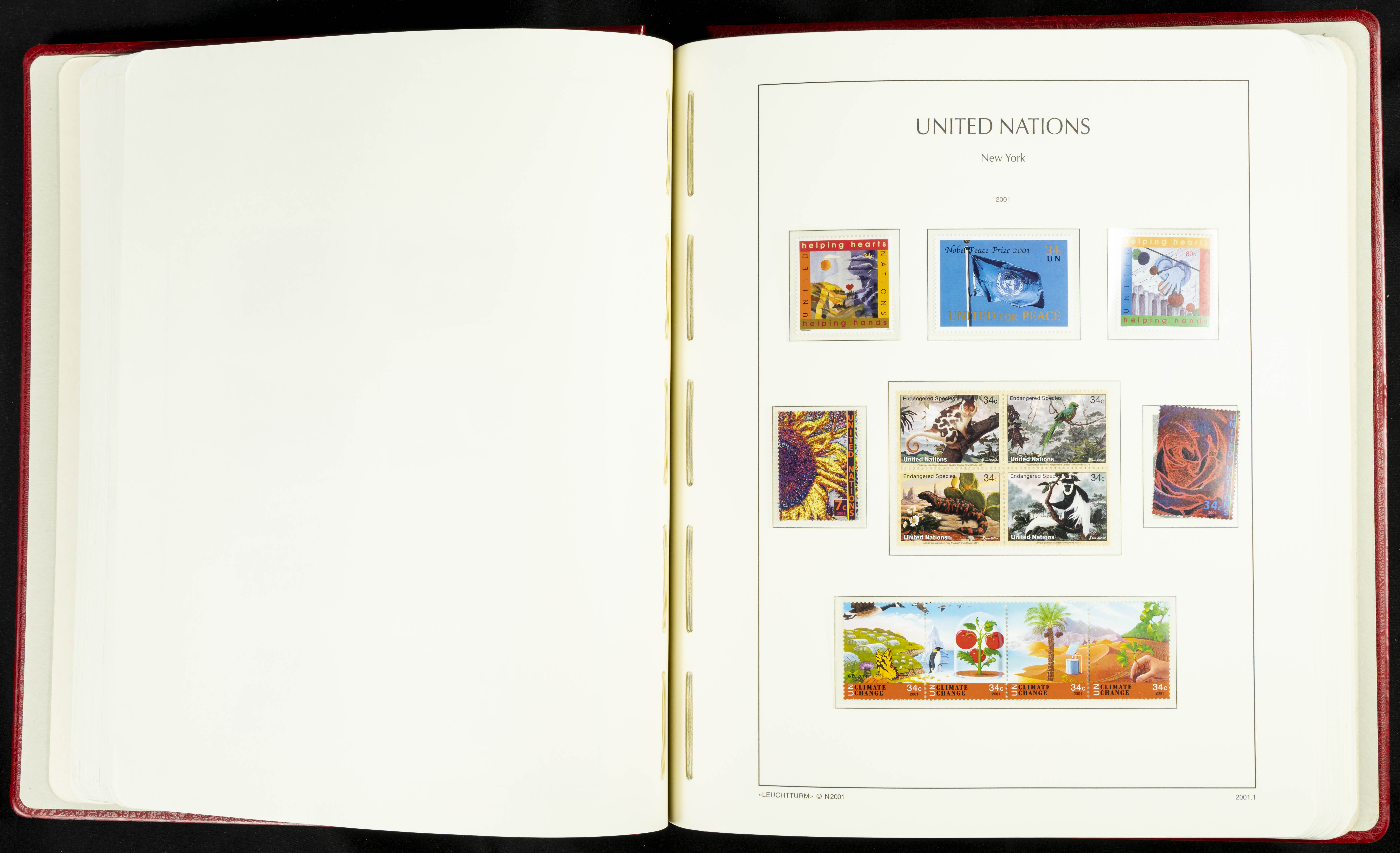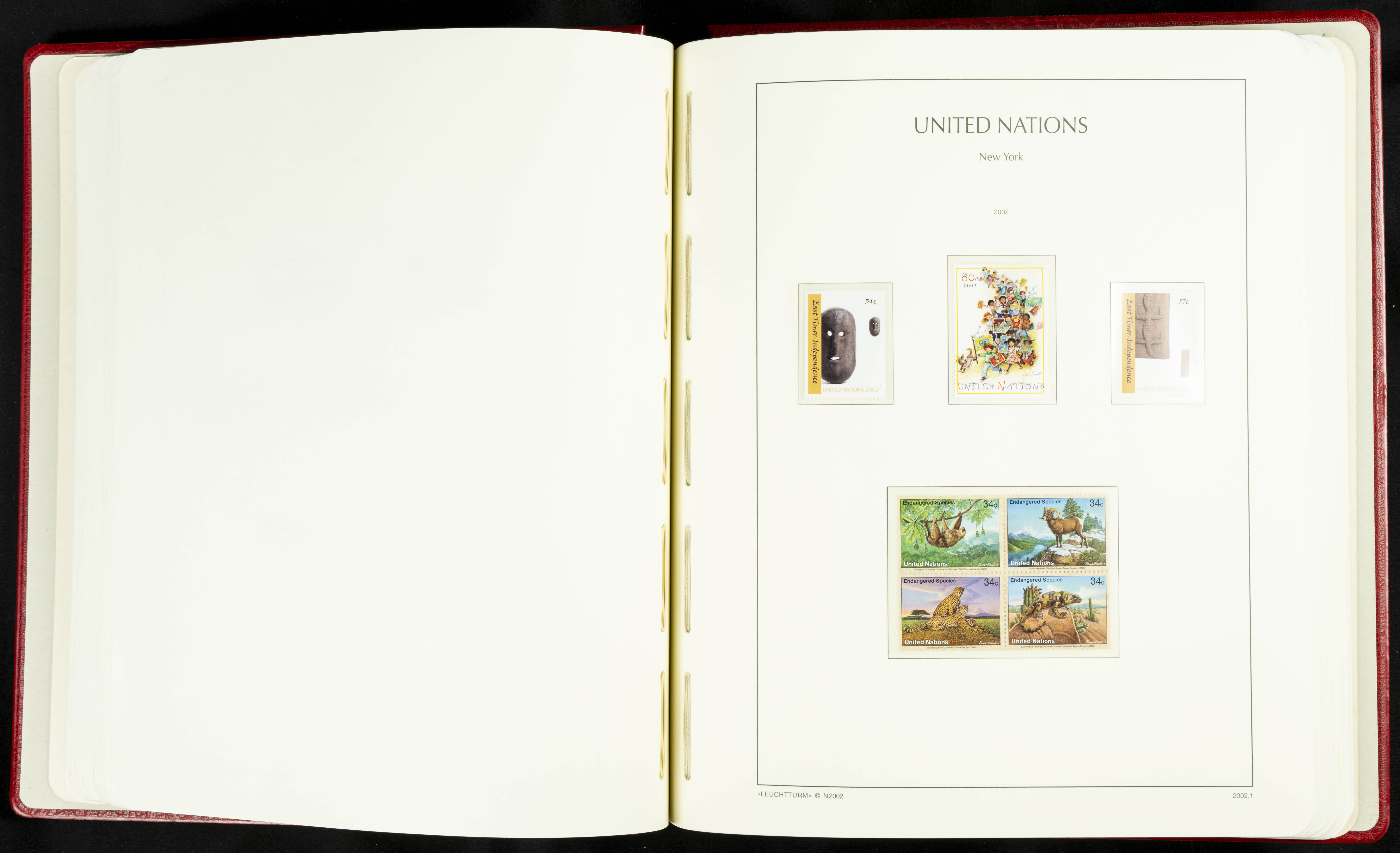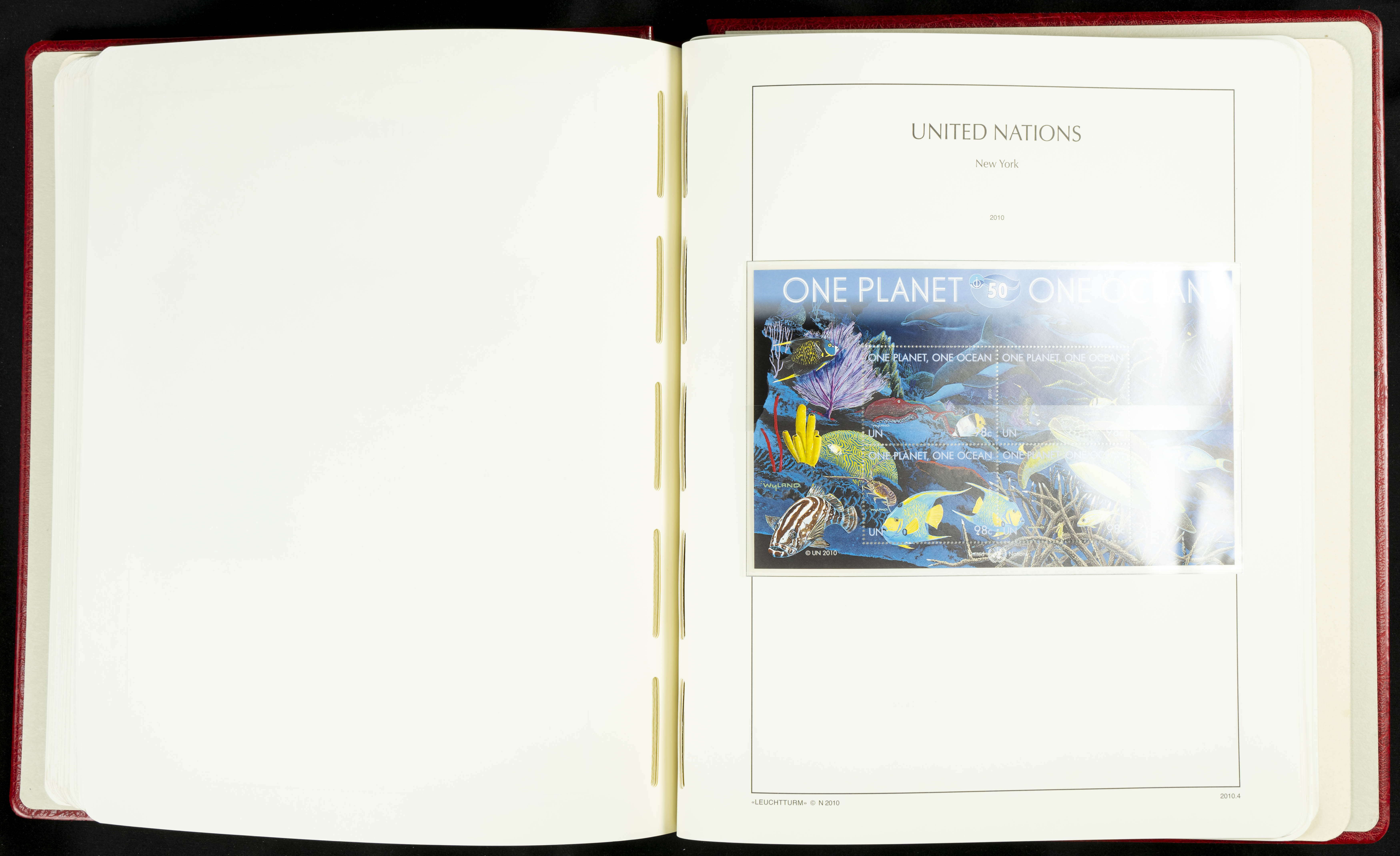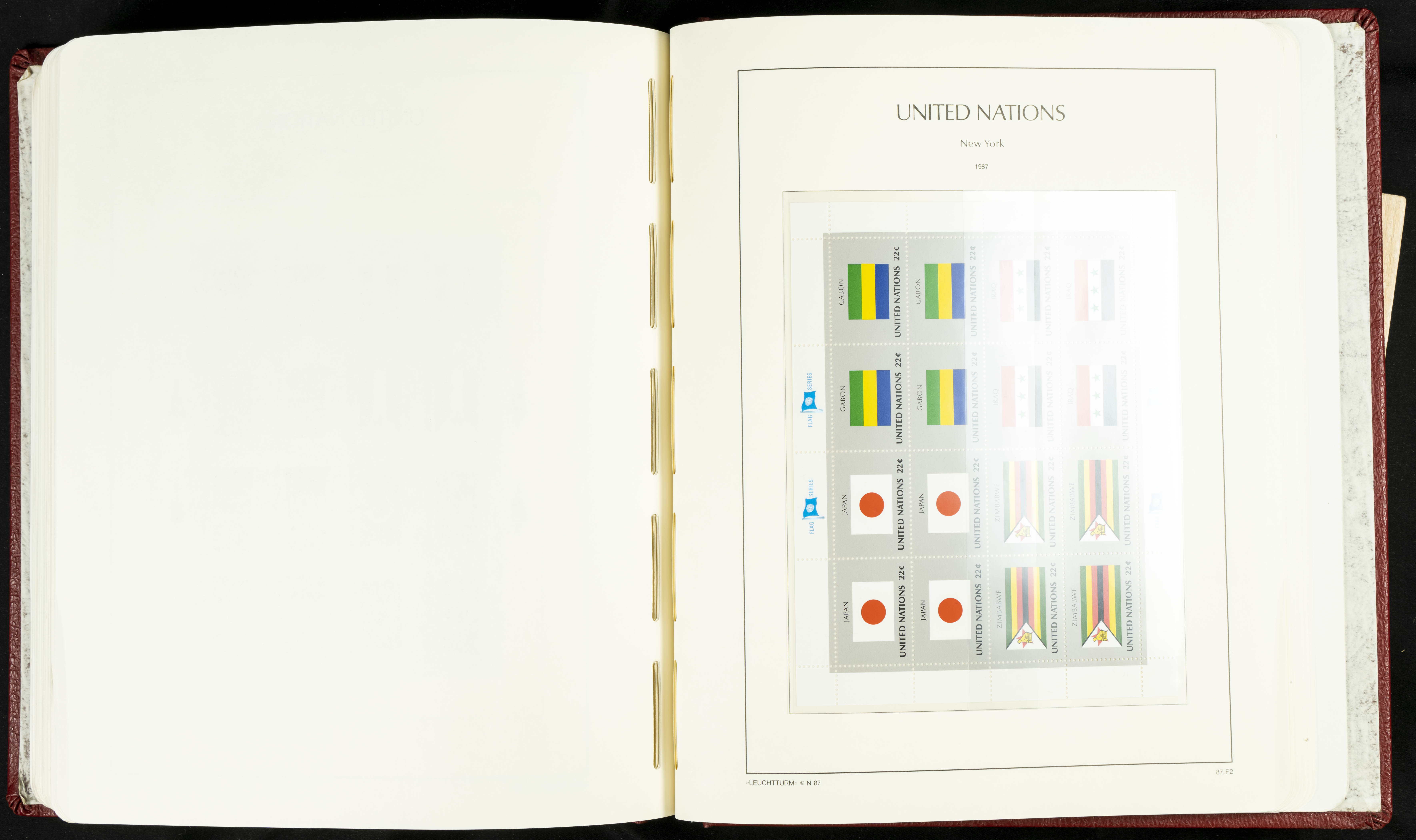 ★★(1951ca). Colección completa de Naciones Unidas (Nueva York, Ginebra y Viena) entre 1951 y 2011, en nuevo y sin fijasellos (montada en álbumes Faro). ALTO VALOR DE CATALOGO. A EXAMINAR.