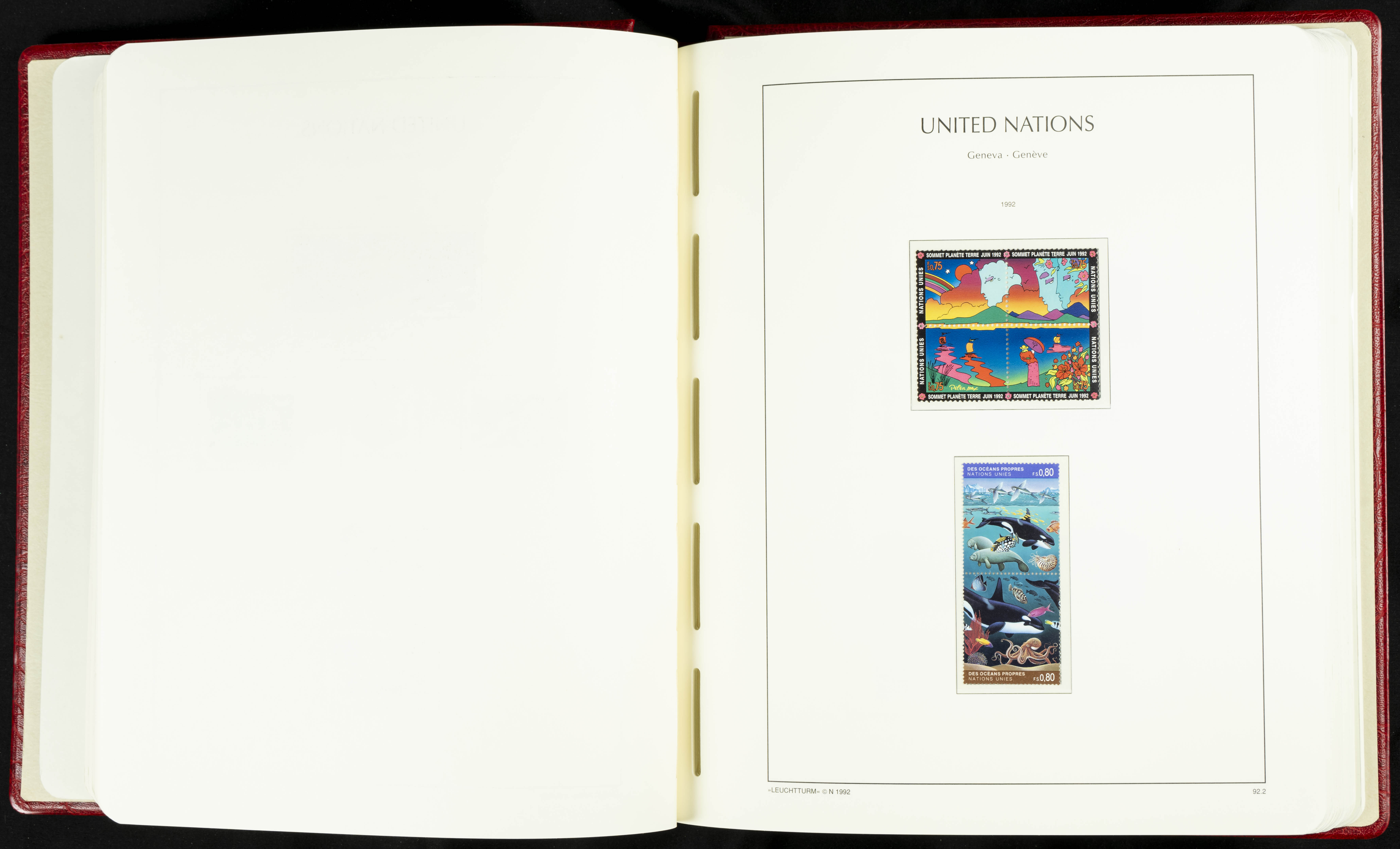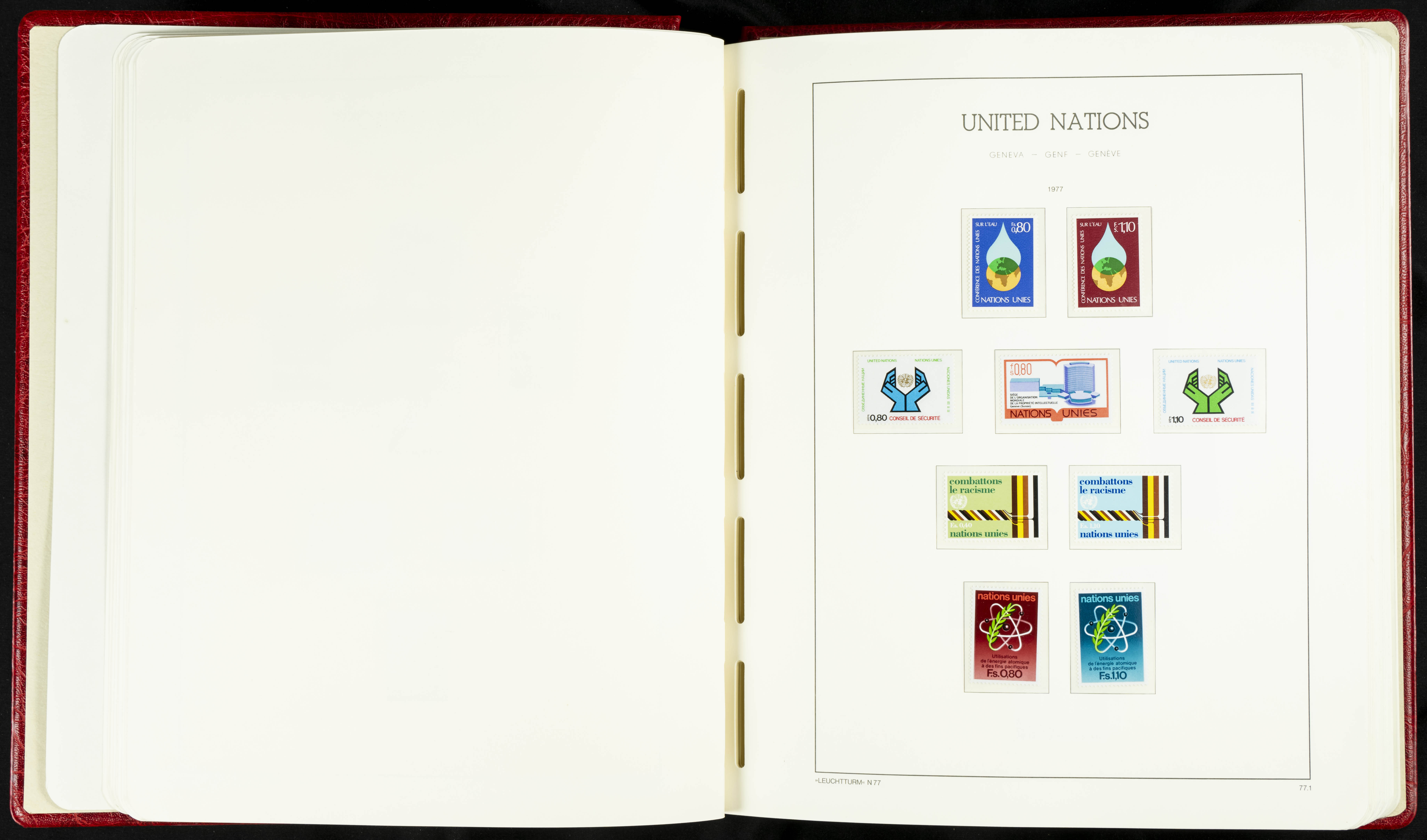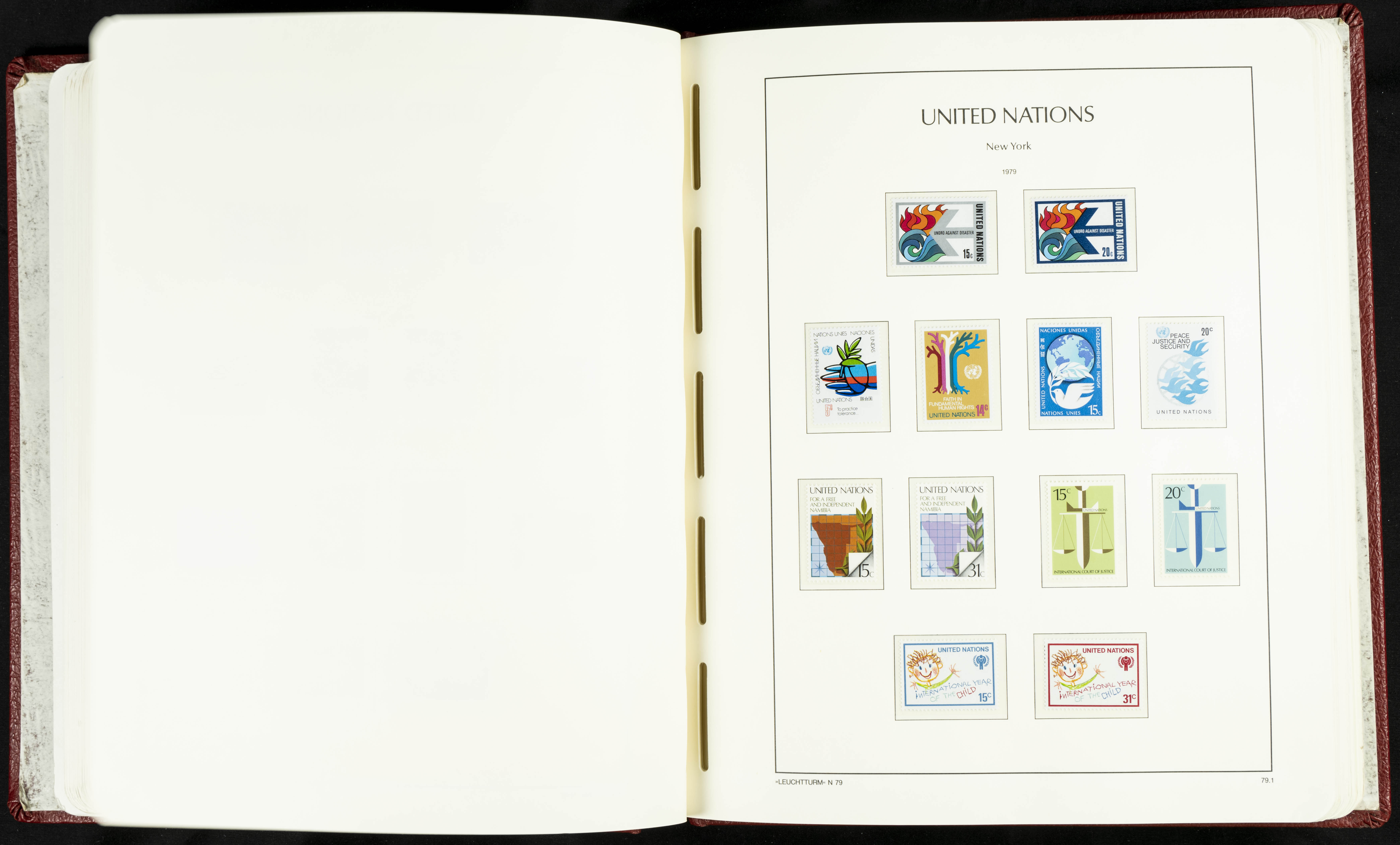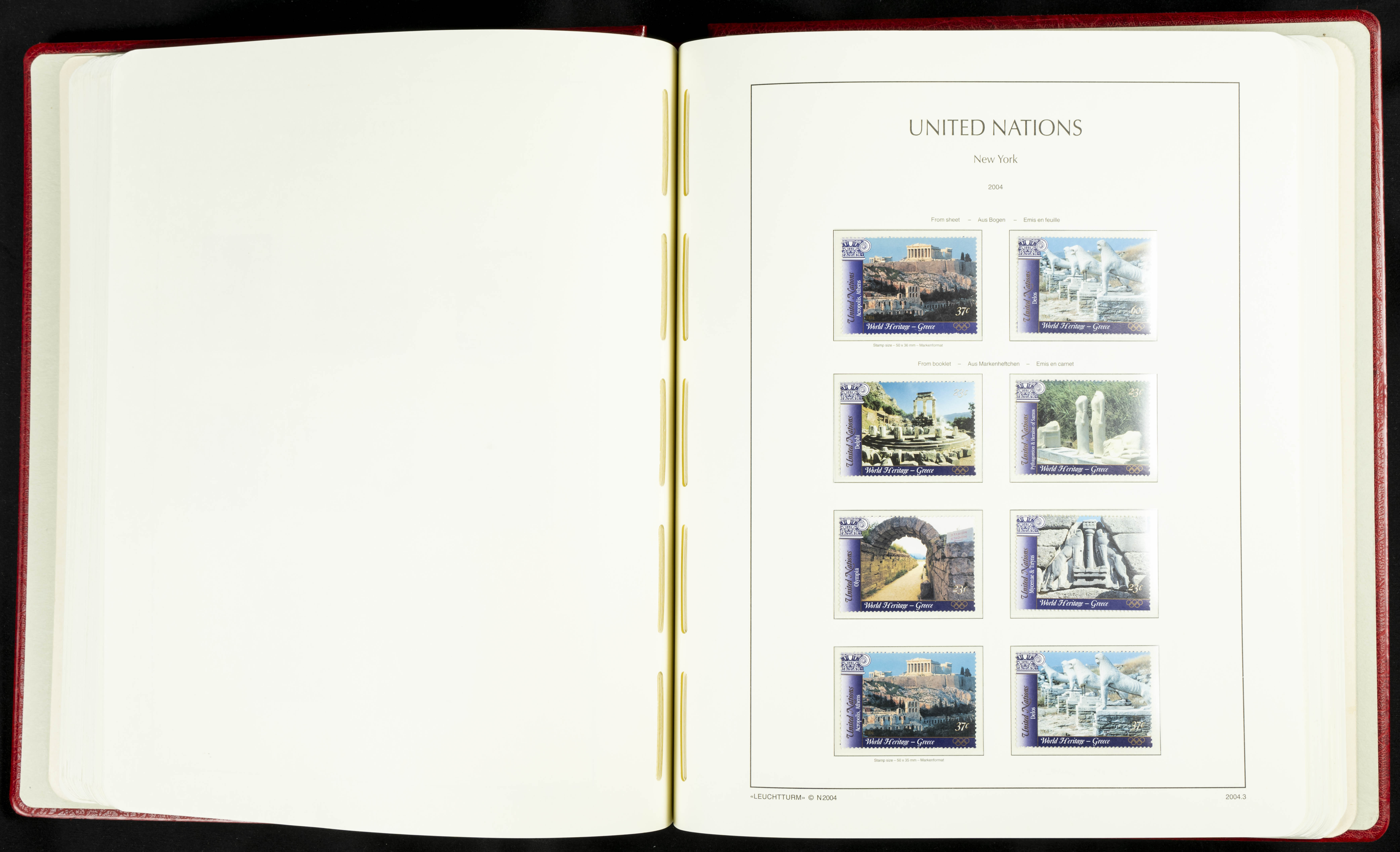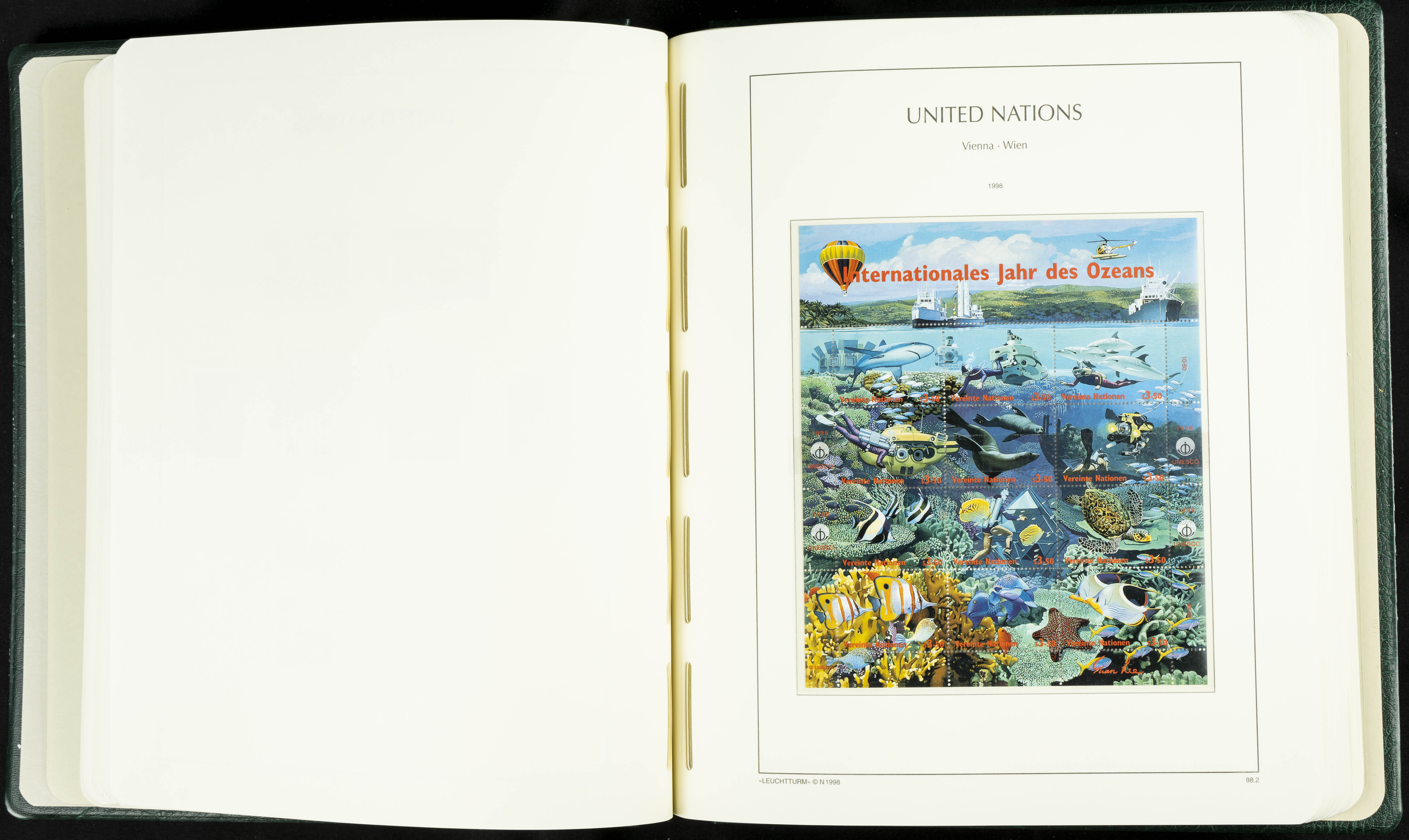 ★★(1951ca). Colección completa de Naciones Unidas (Nueva York, Ginebra y Viena) entre 1951 y 2011, en nuevo y sin fijasellos (montada en álbumes Faro). ALTO VALOR DE CATALOGO. A EXAMINAR.