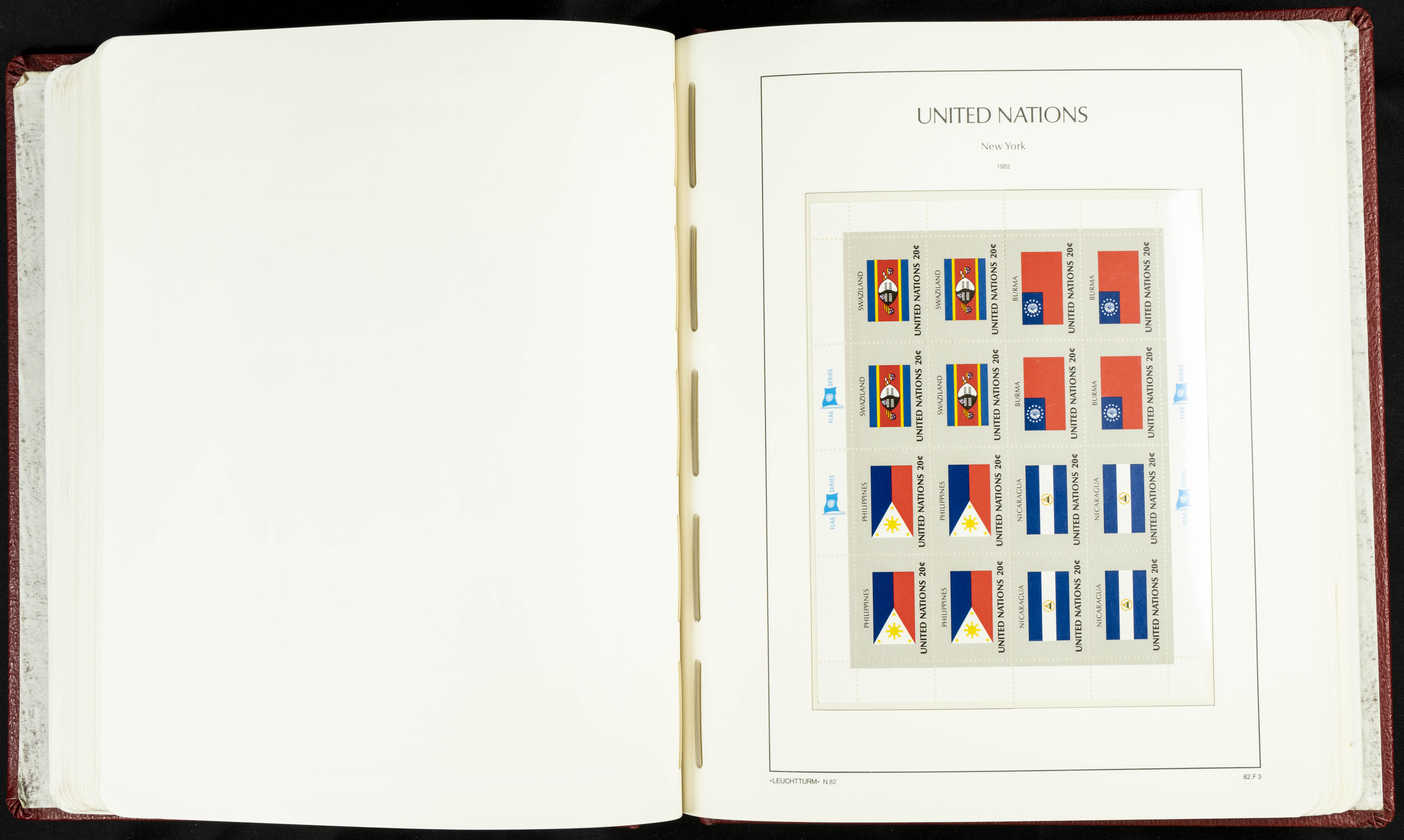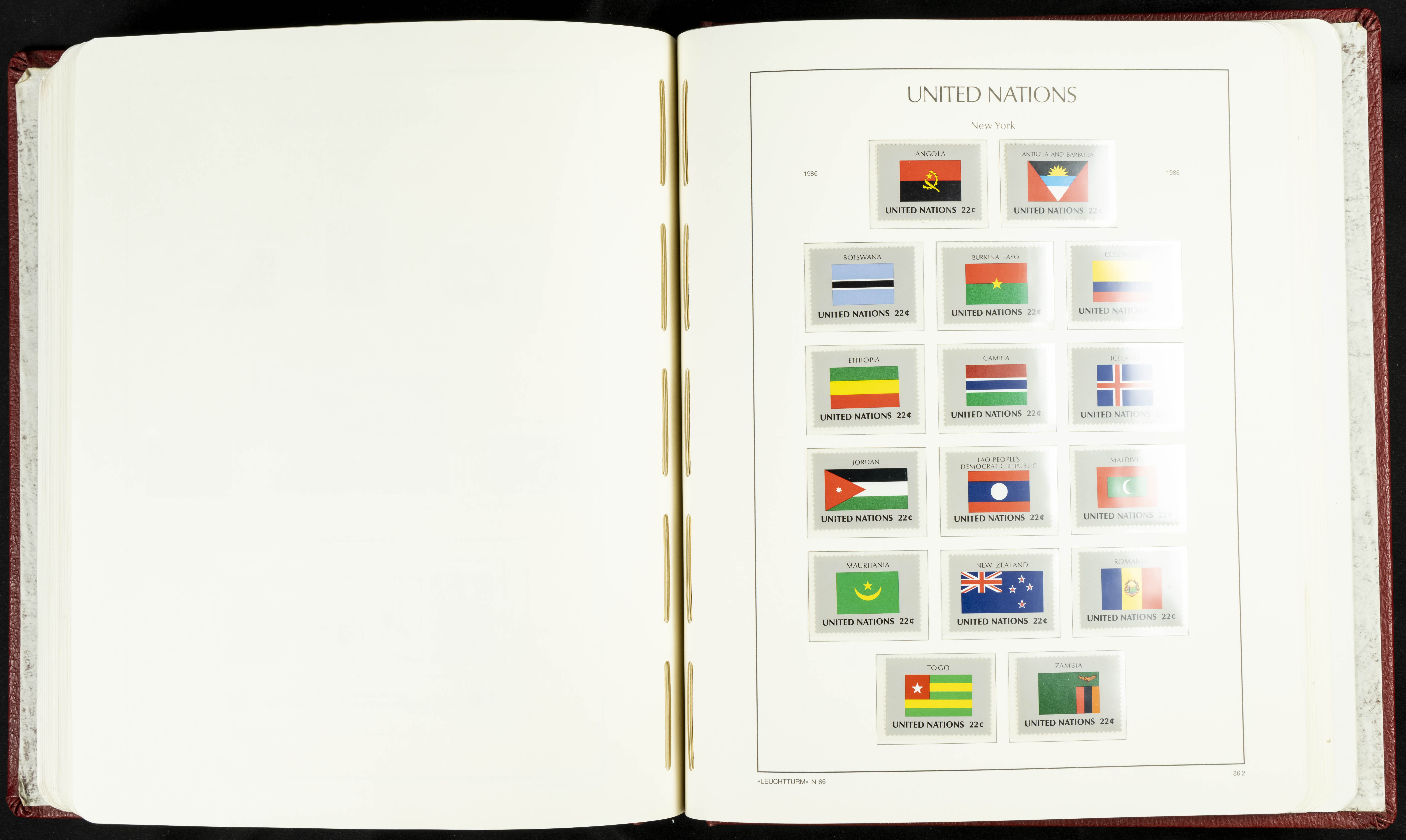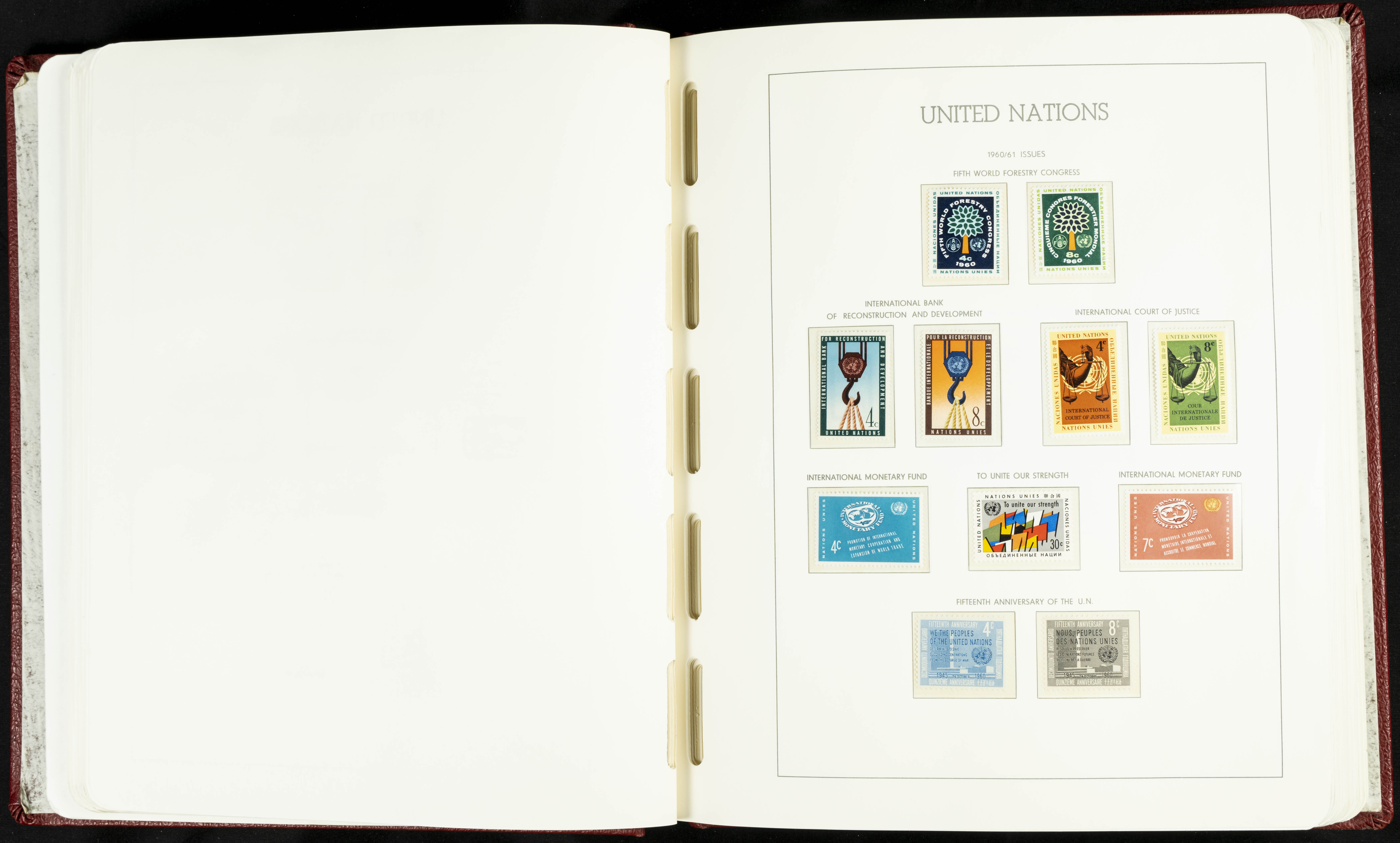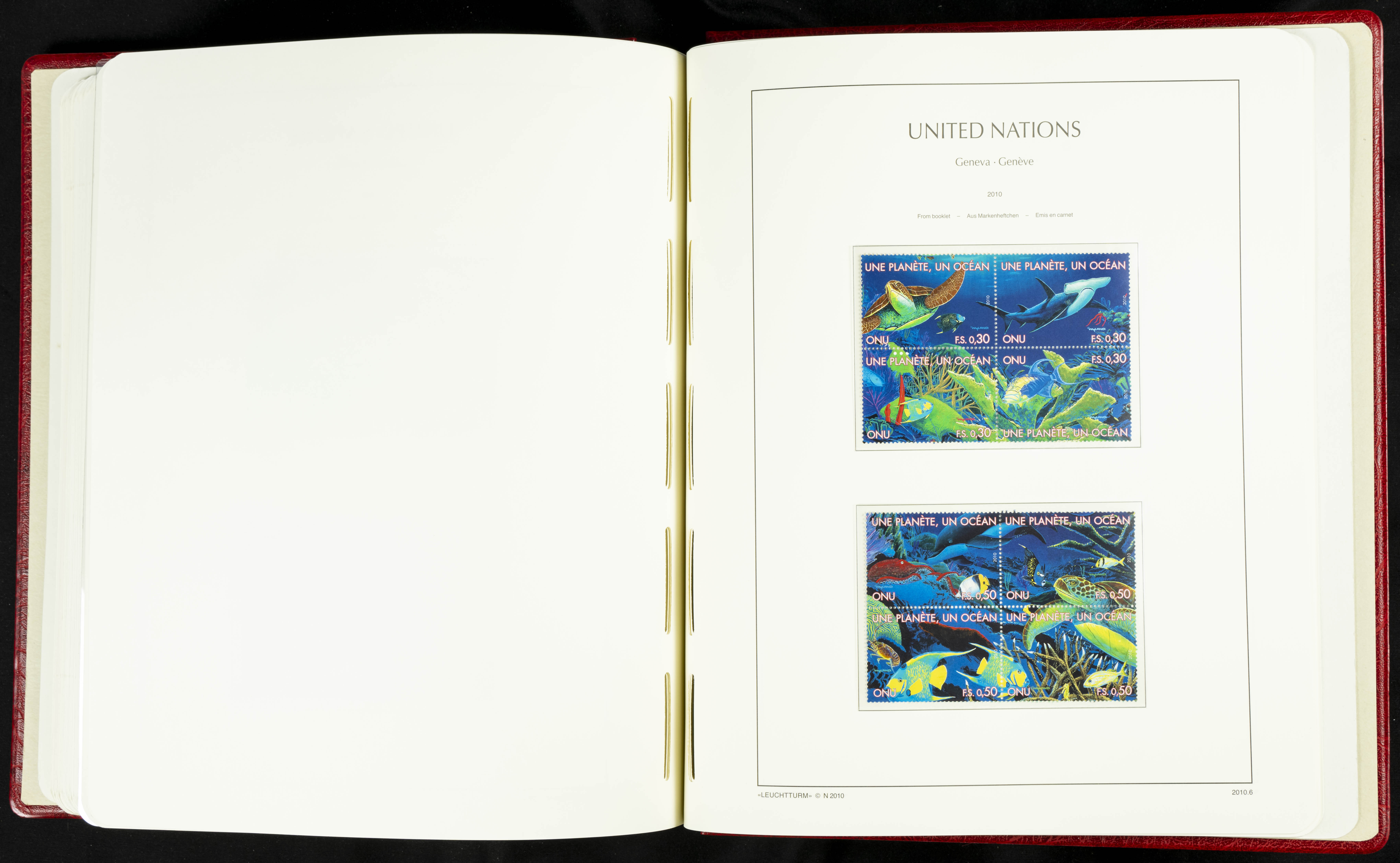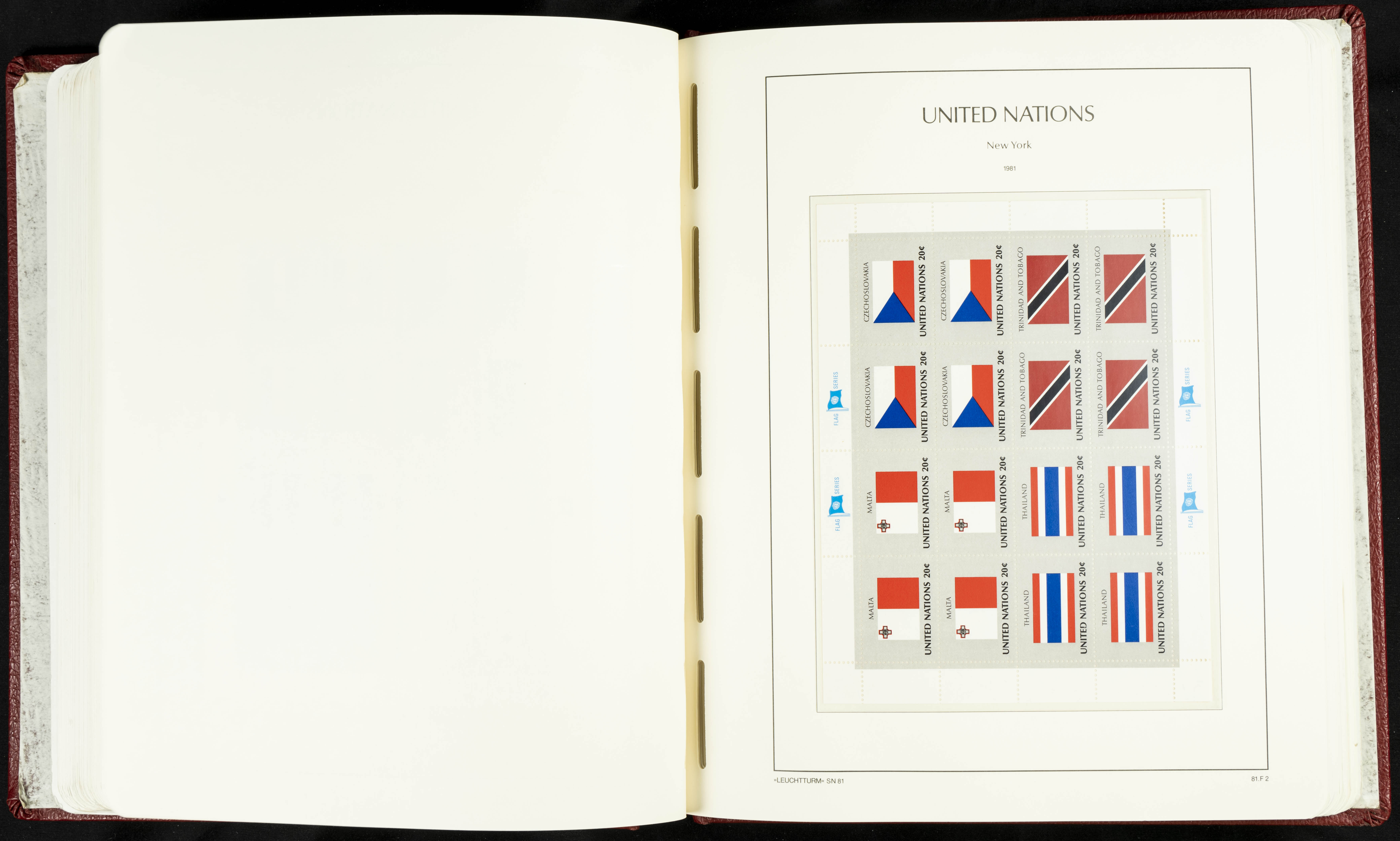 ★★(1951ca). Colección completa de Naciones Unidas (Nueva York, Ginebra y Viena) entre 1951 y 2011, en nuevo y sin fijasellos (montada en álbumes Faro). ALTO VALOR DE CATALOGO. A EXAMINAR.