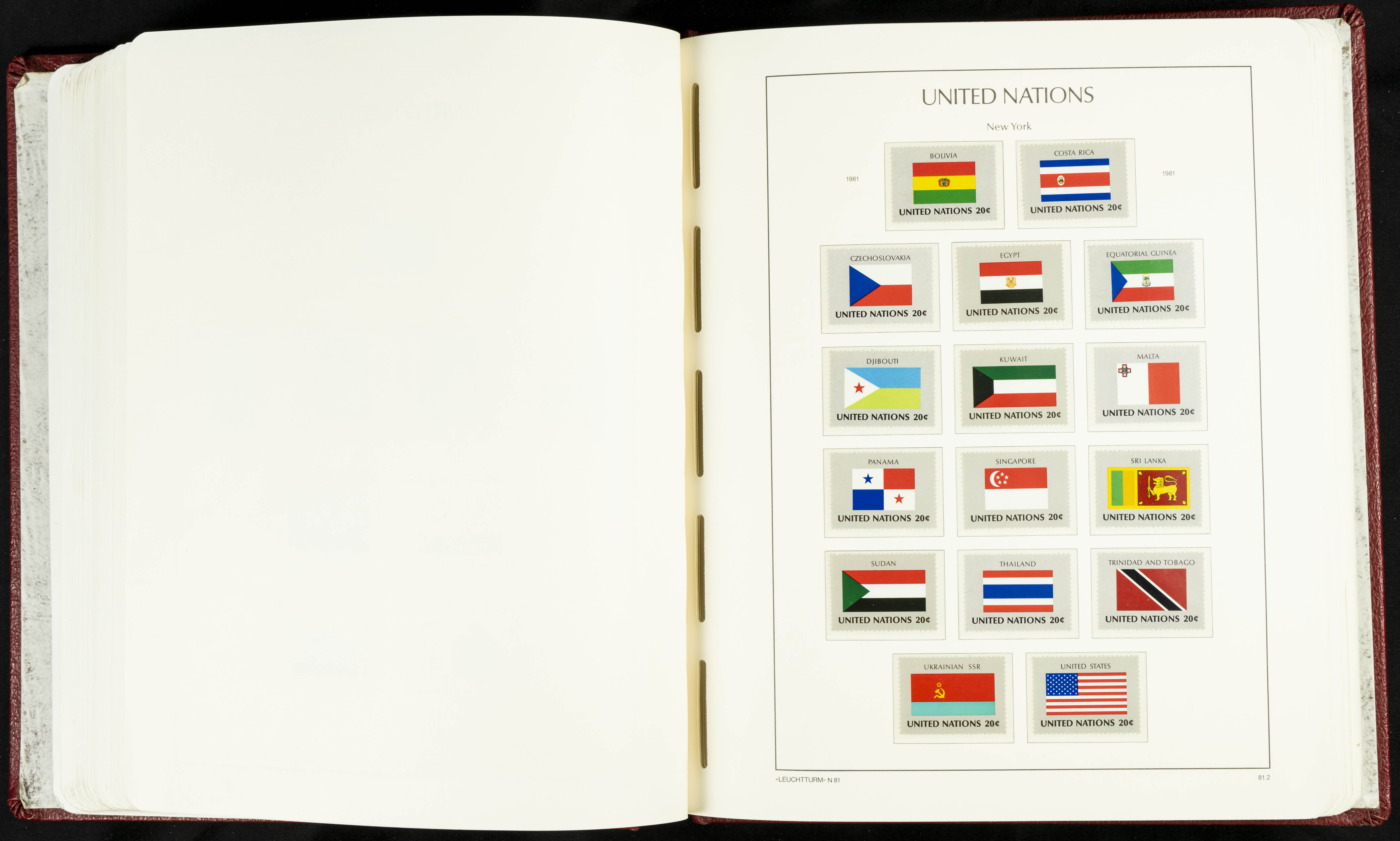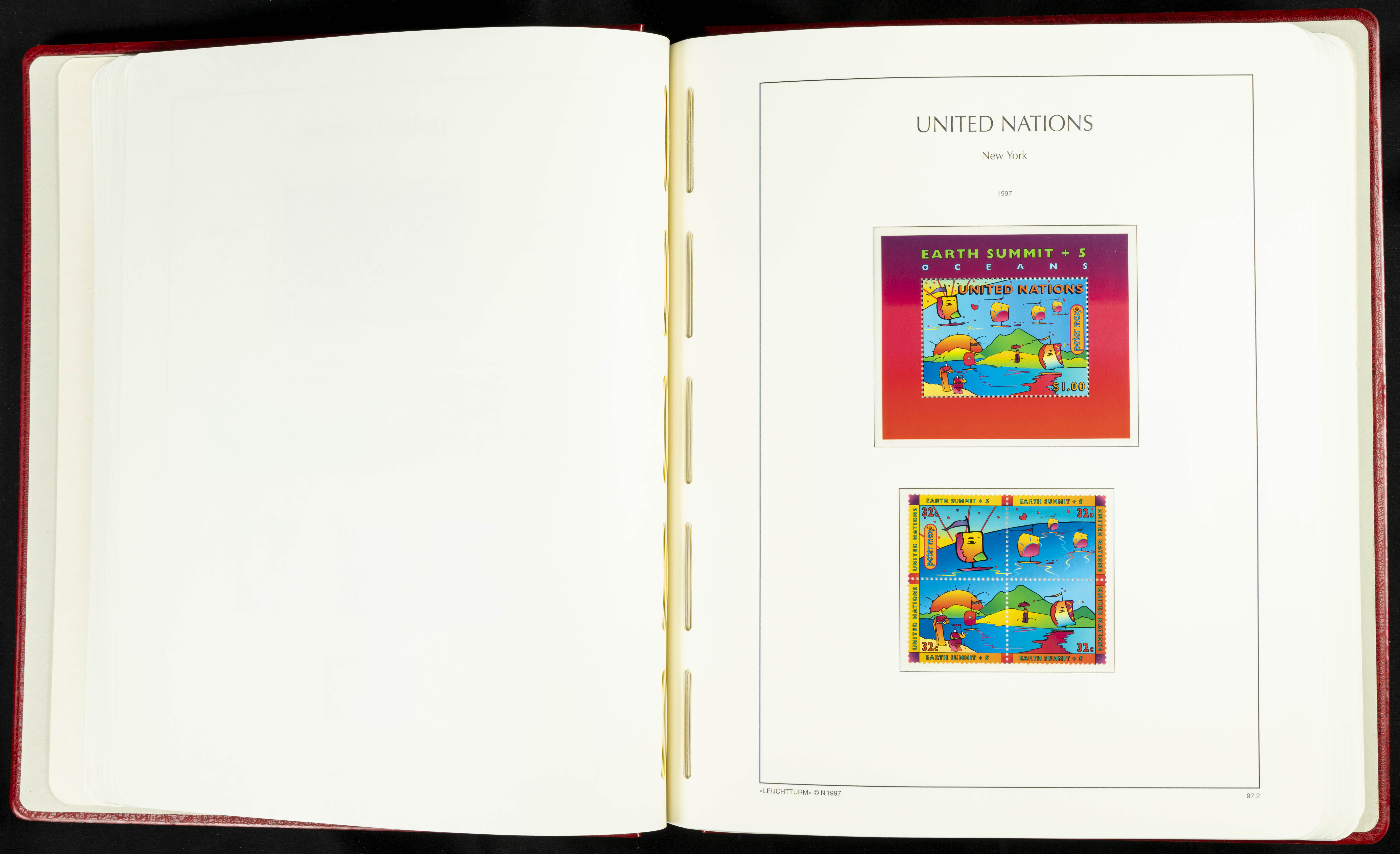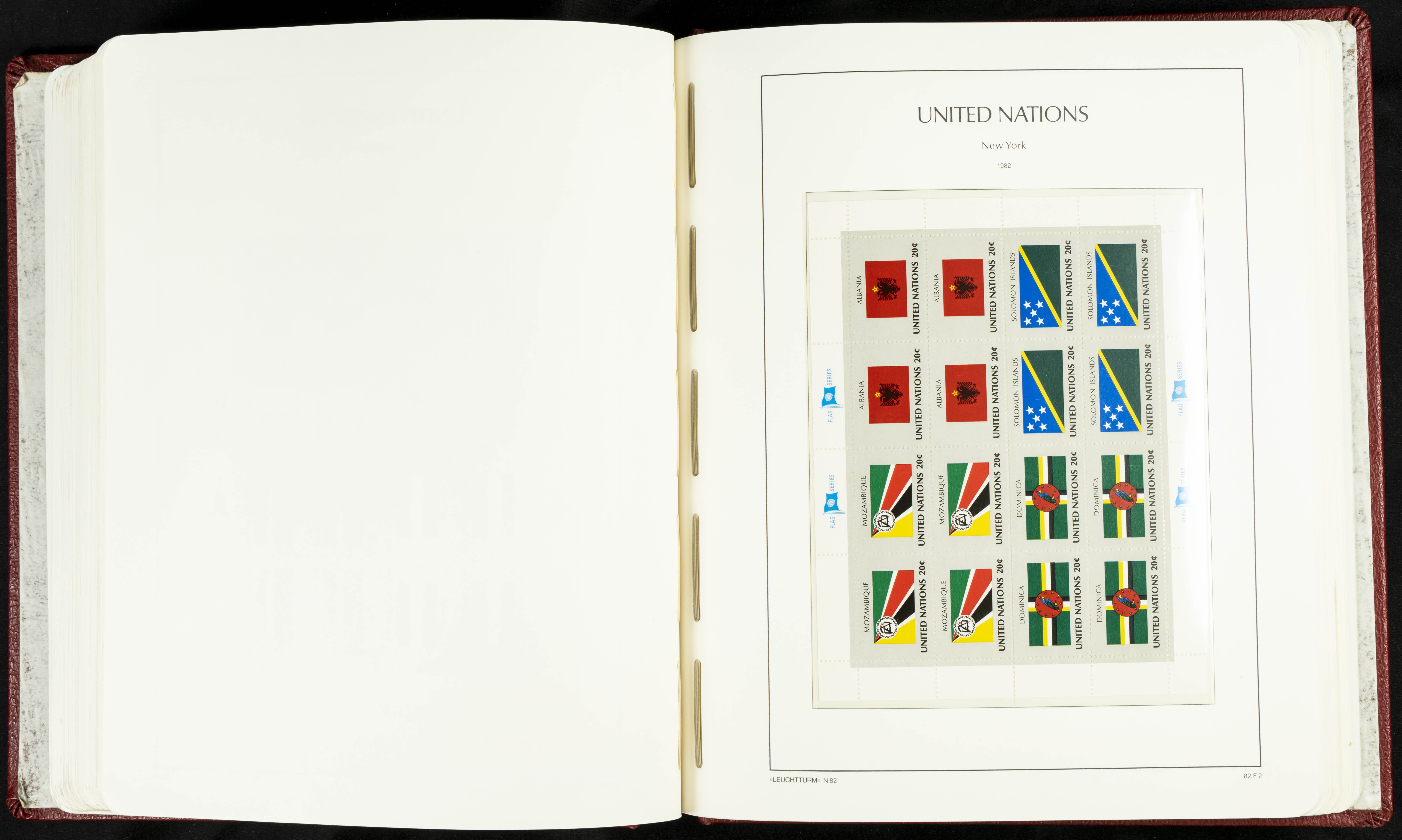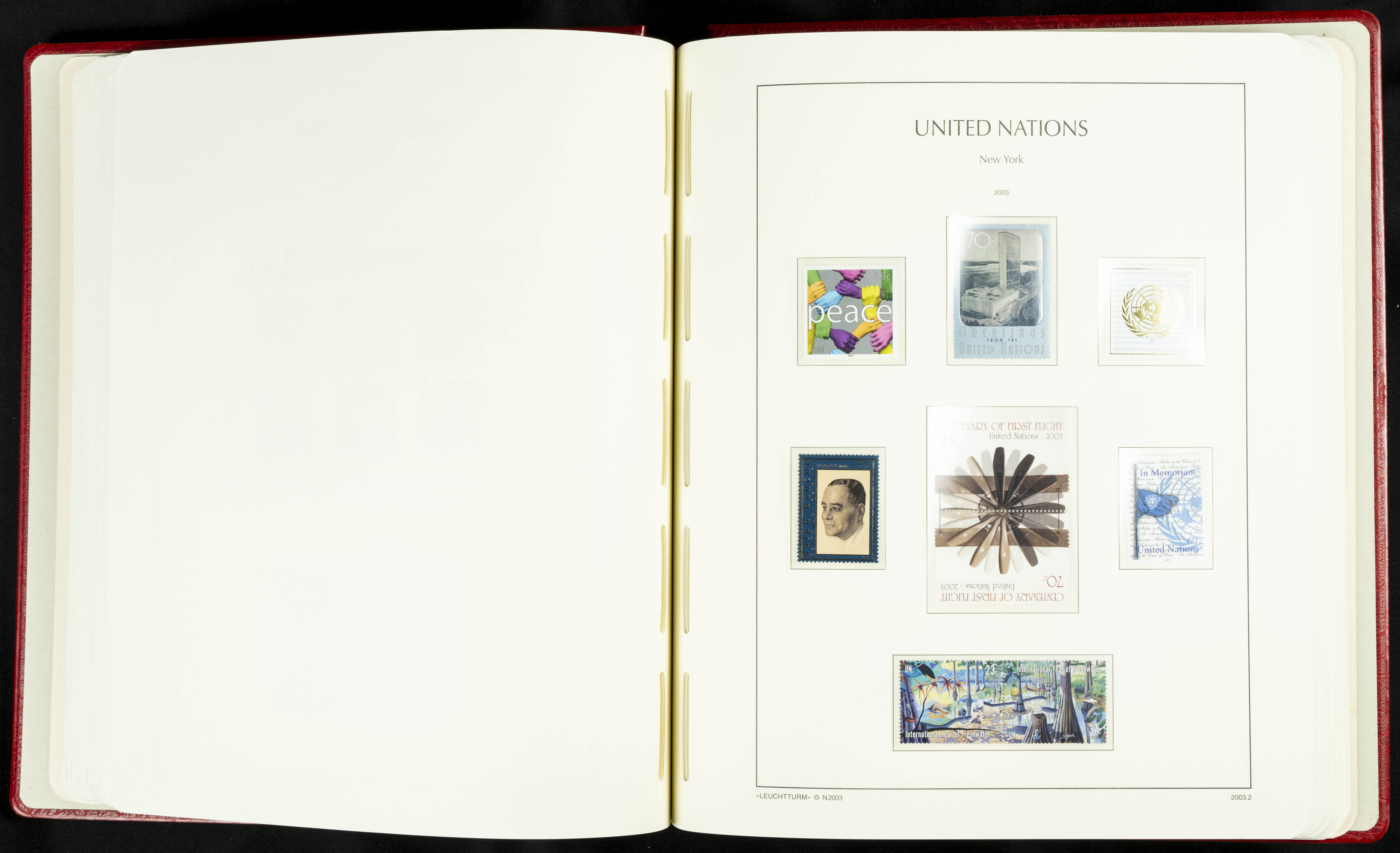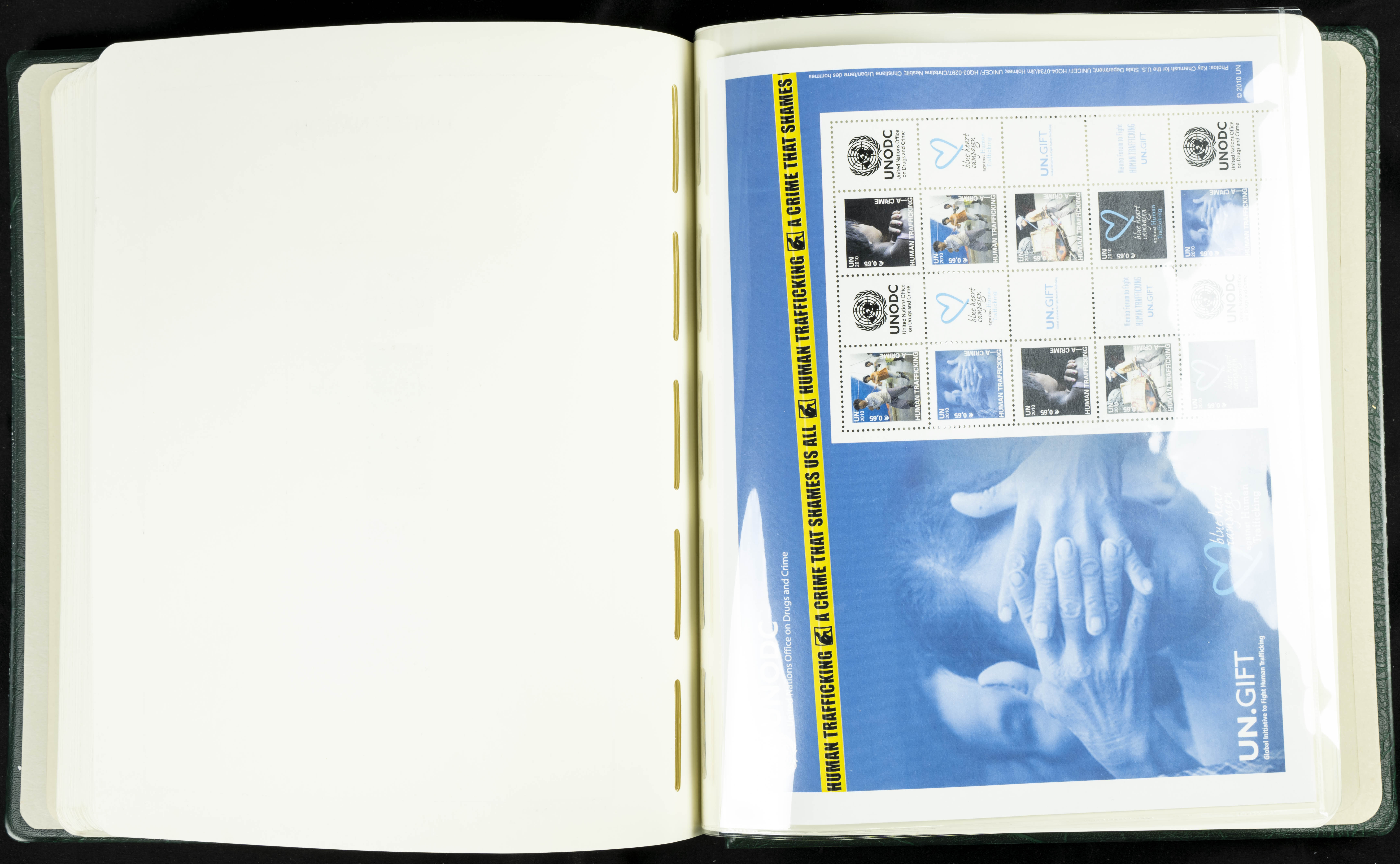★★(1951ca). Colección completa de Naciones Unidas (Nueva York, Ginebra y Viena) entre 1951 y 2011, en nuevo y sin fijasellos (montada en álbumes Faro). ALTO VALOR DE CATALOGO. A EXAMINAR.