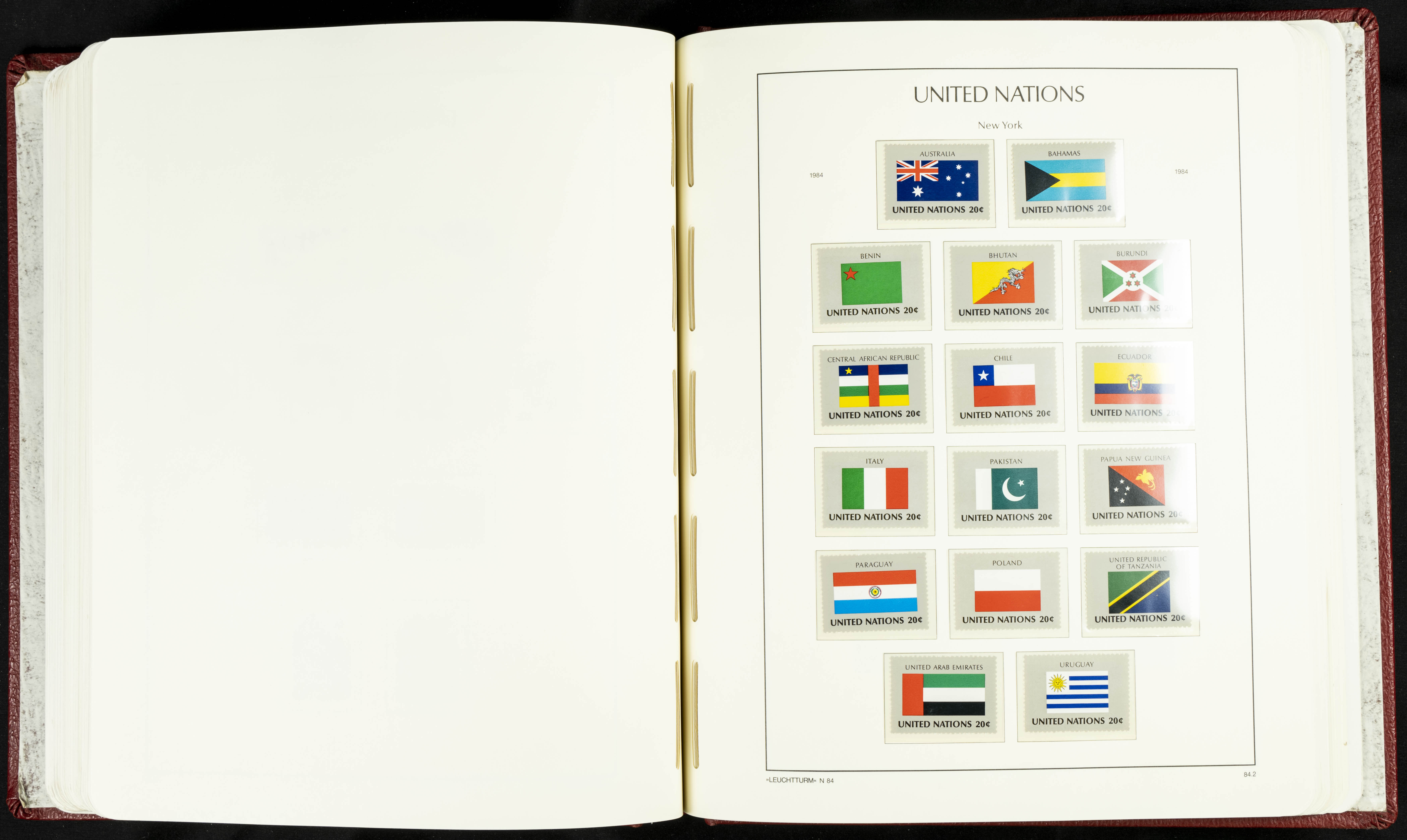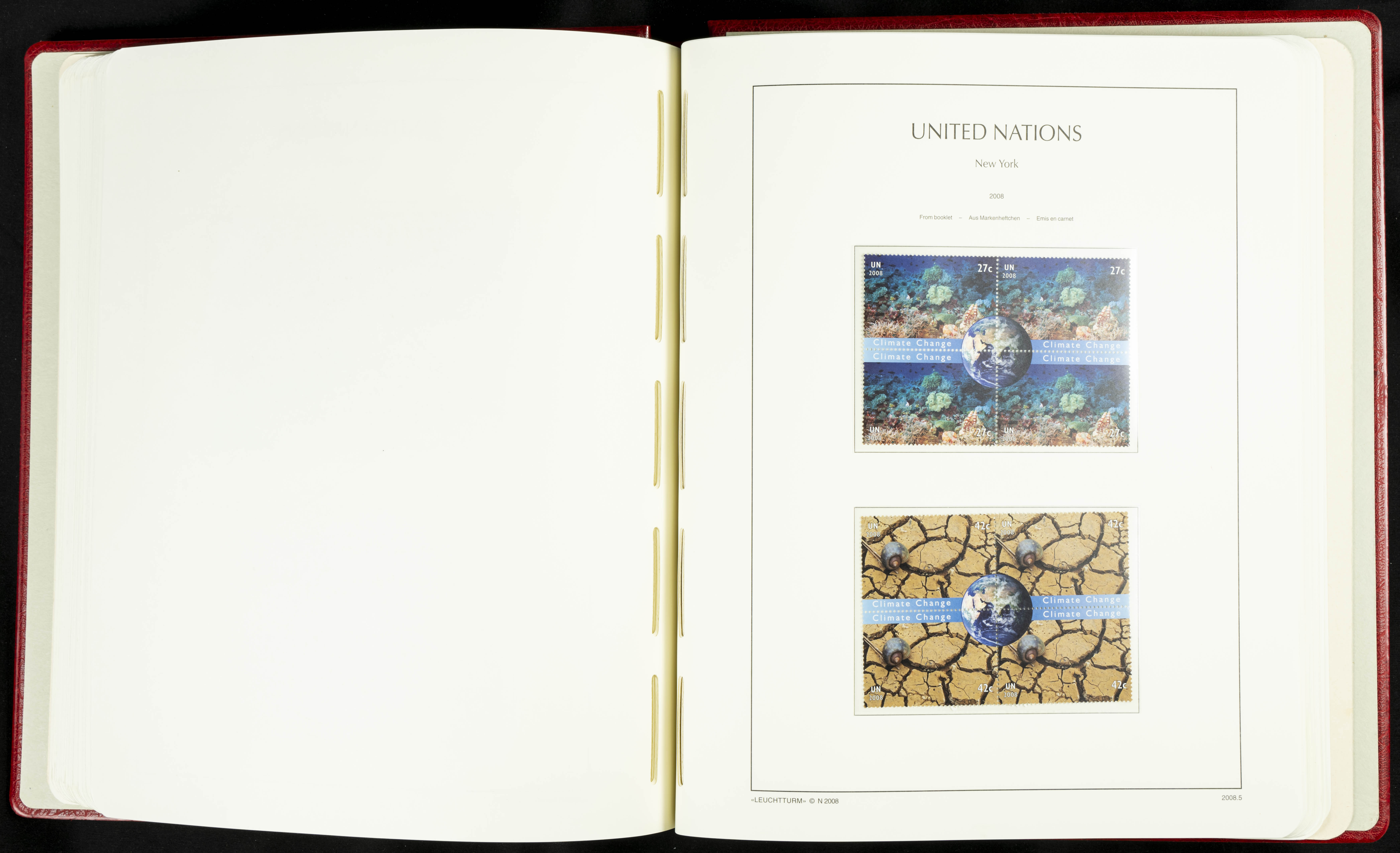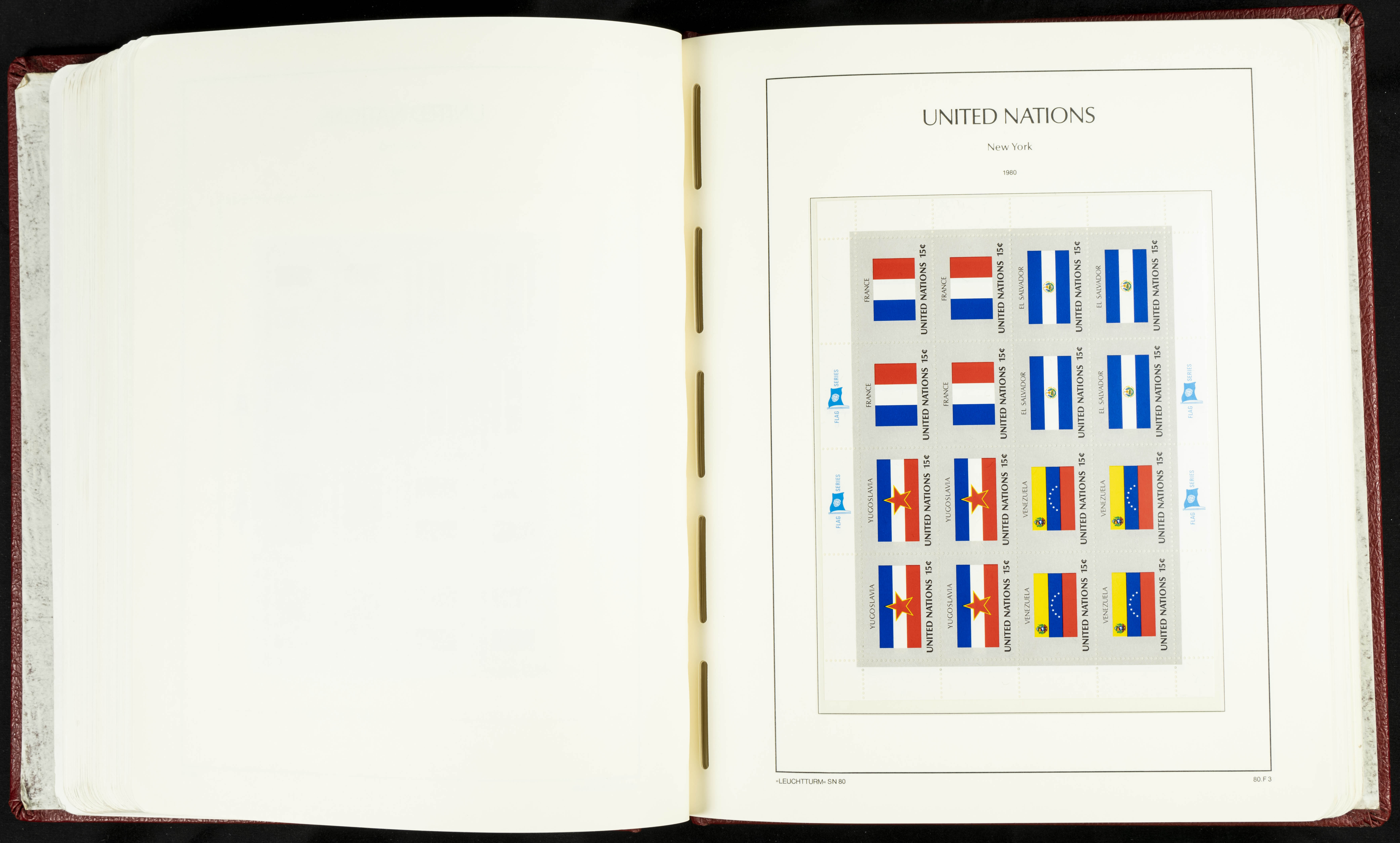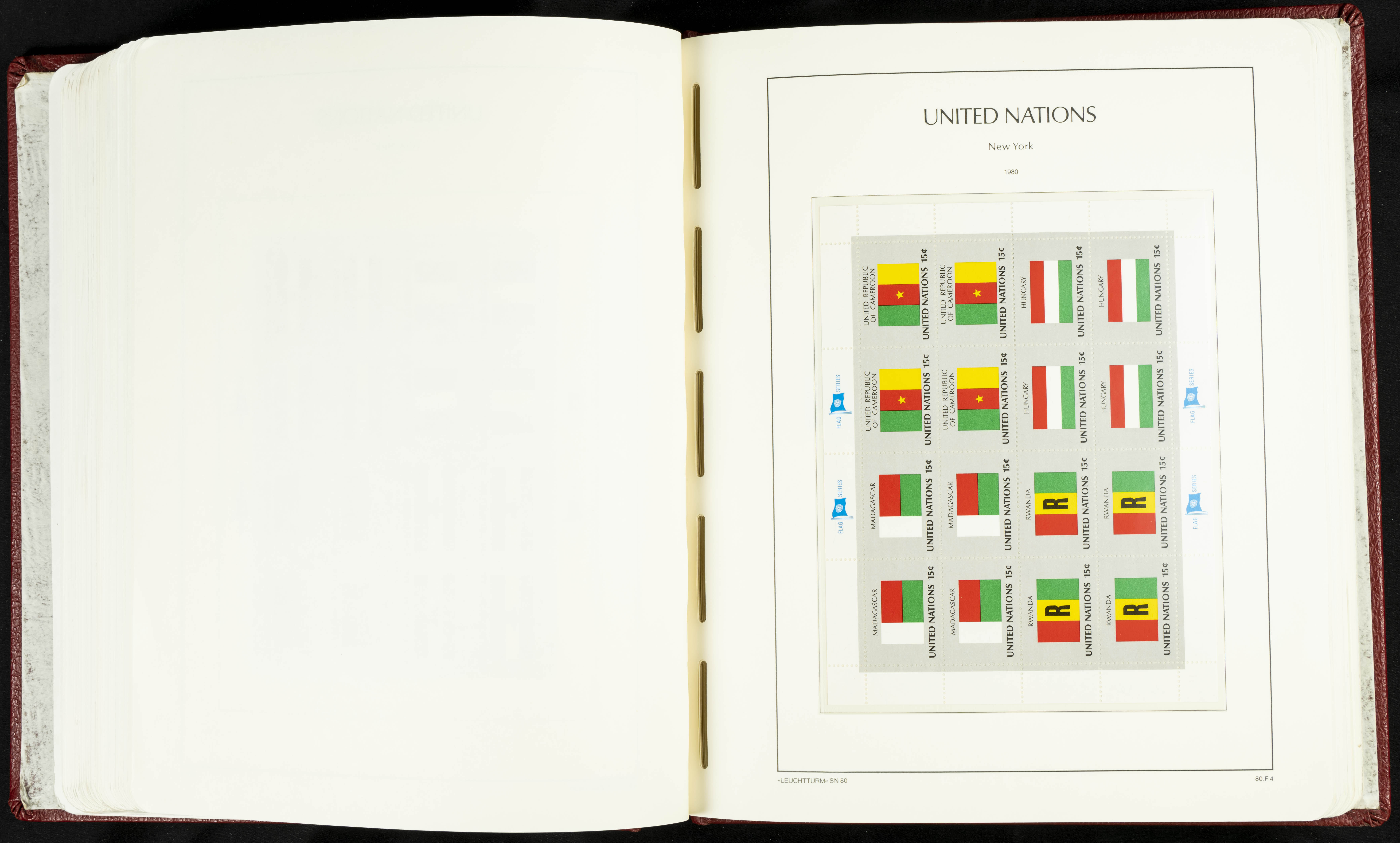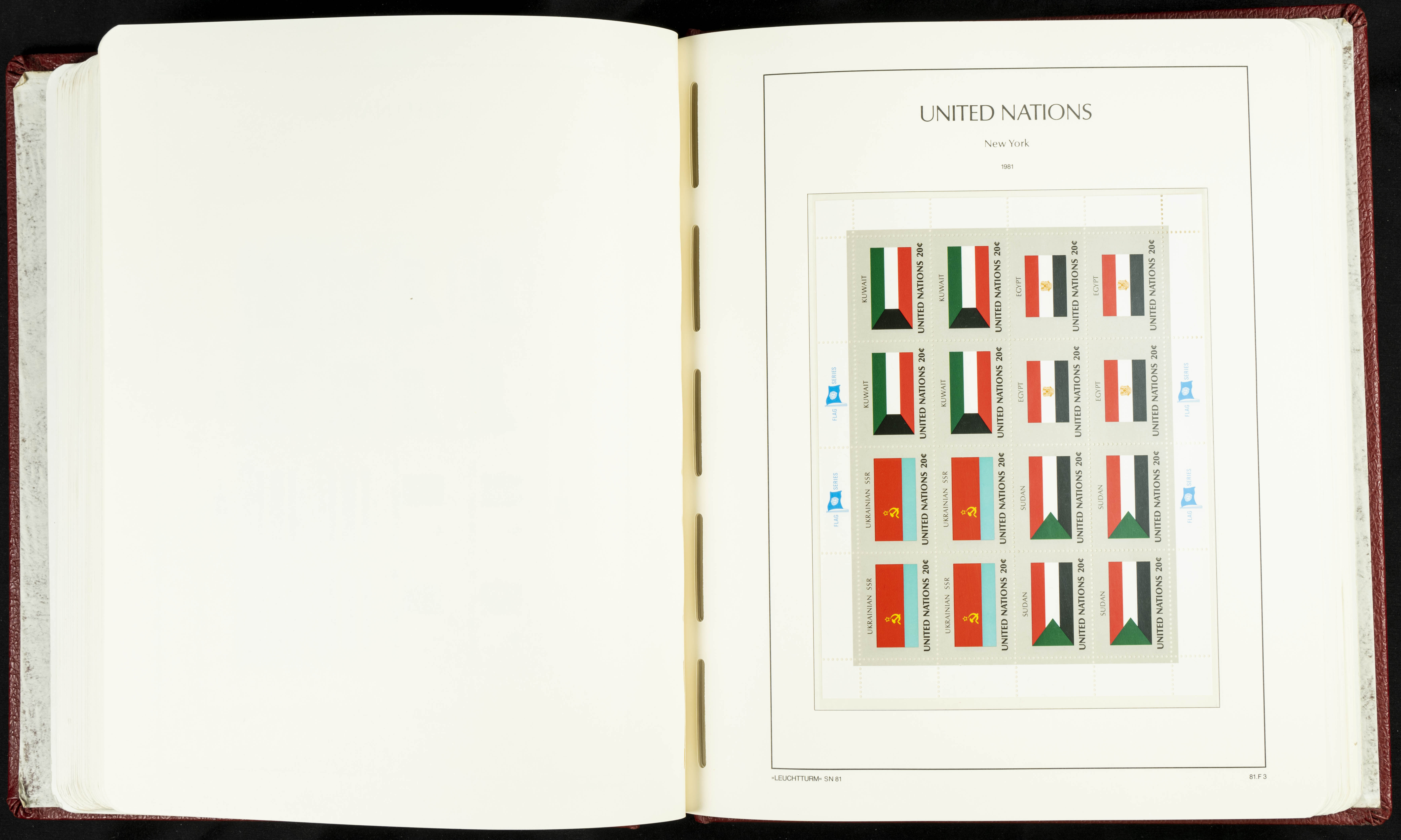 ★★(1951ca). Colección completa de Naciones Unidas (Nueva York, Ginebra y Viena) entre 1951 y 2011, en nuevo y sin fijasellos (montada en álbumes Faro). ALTO VALOR DE CATALOGO. A EXAMINAR.