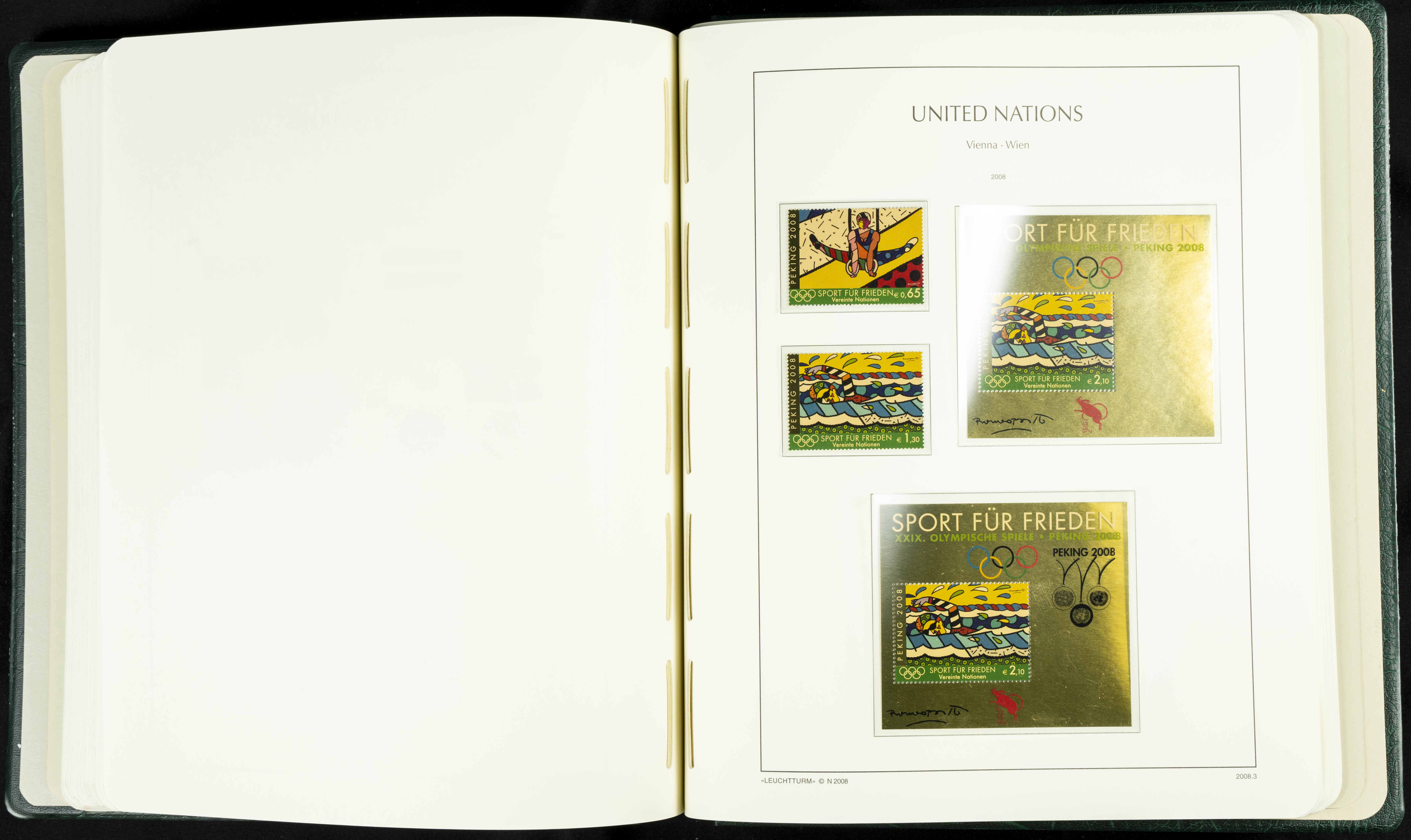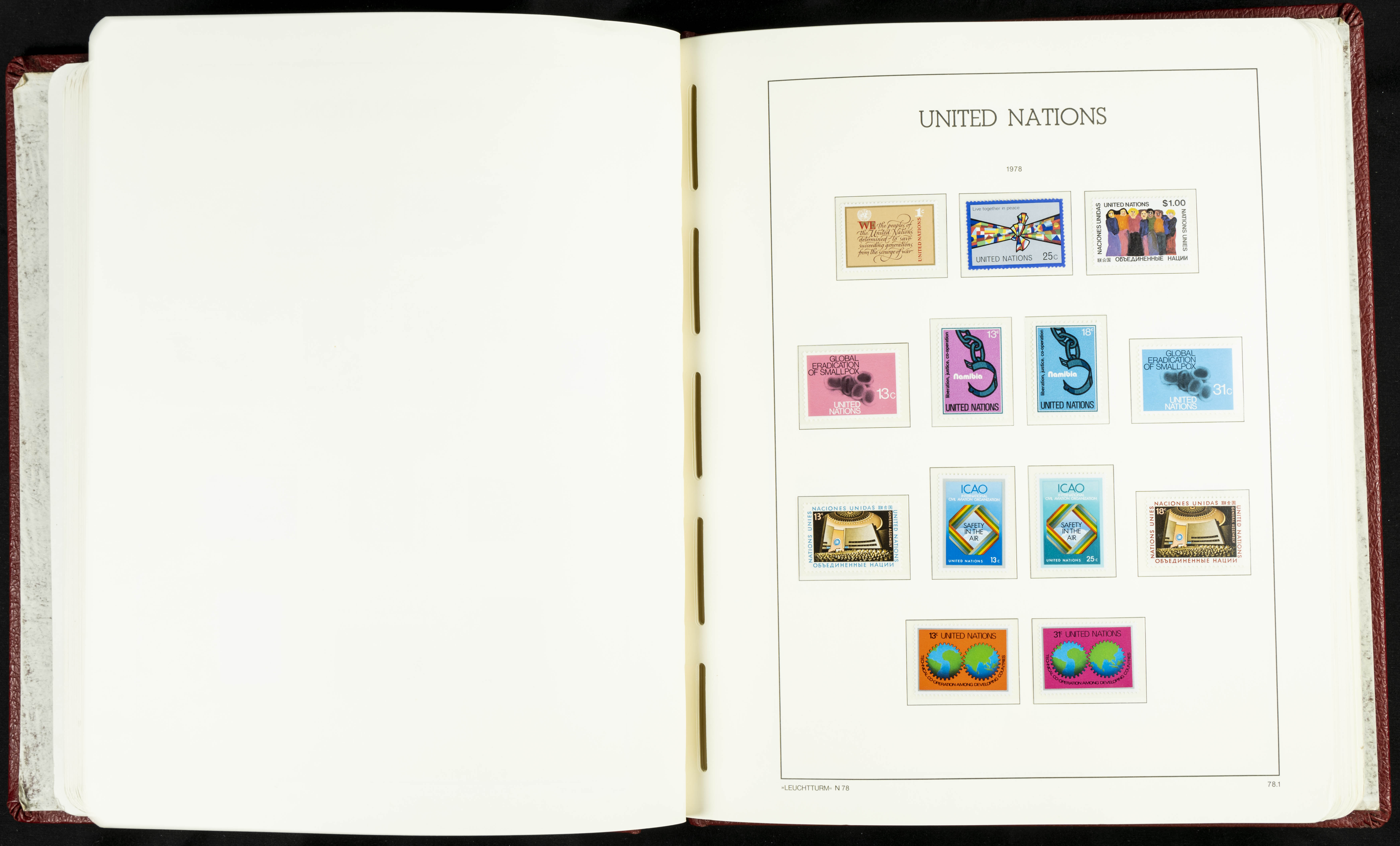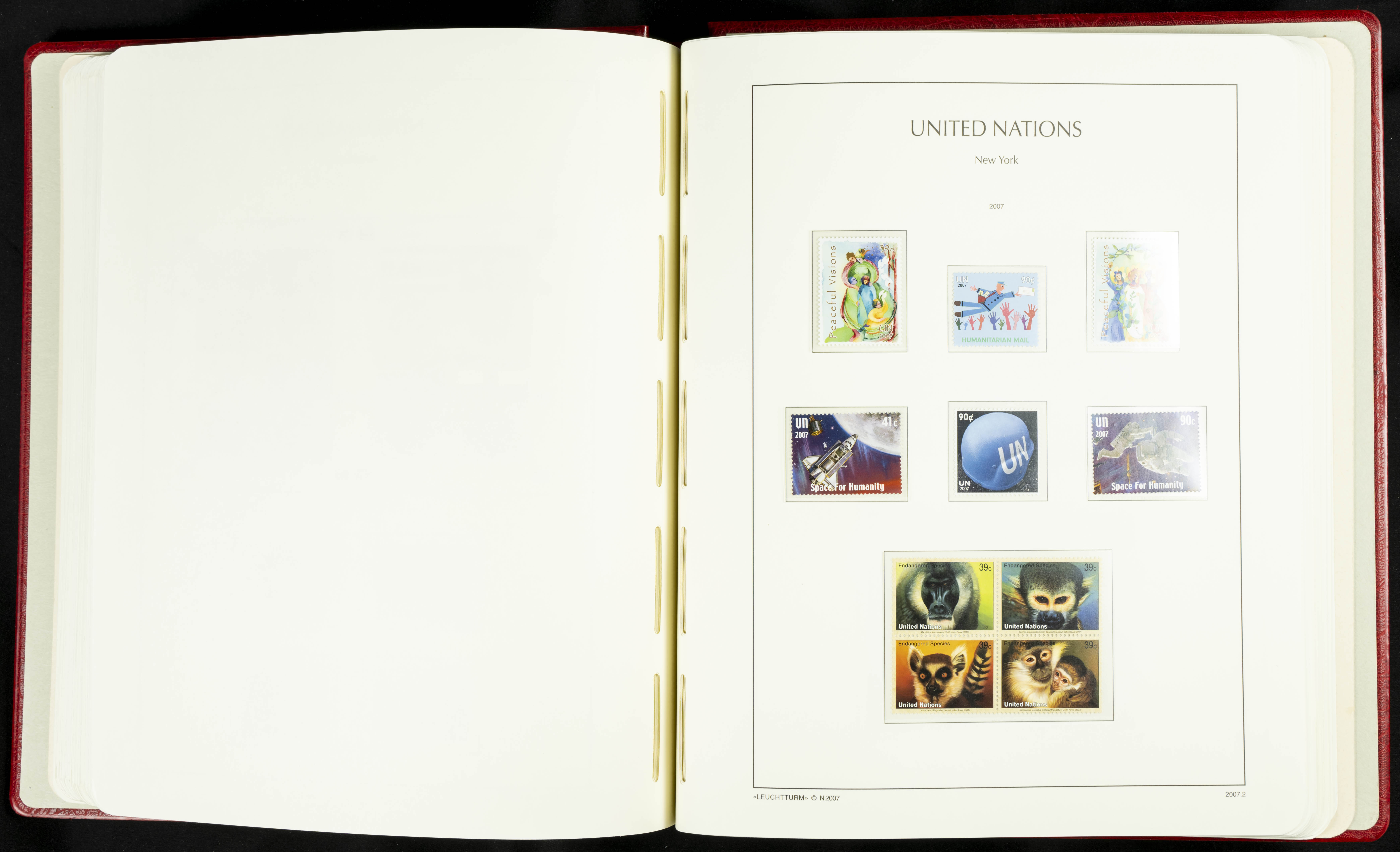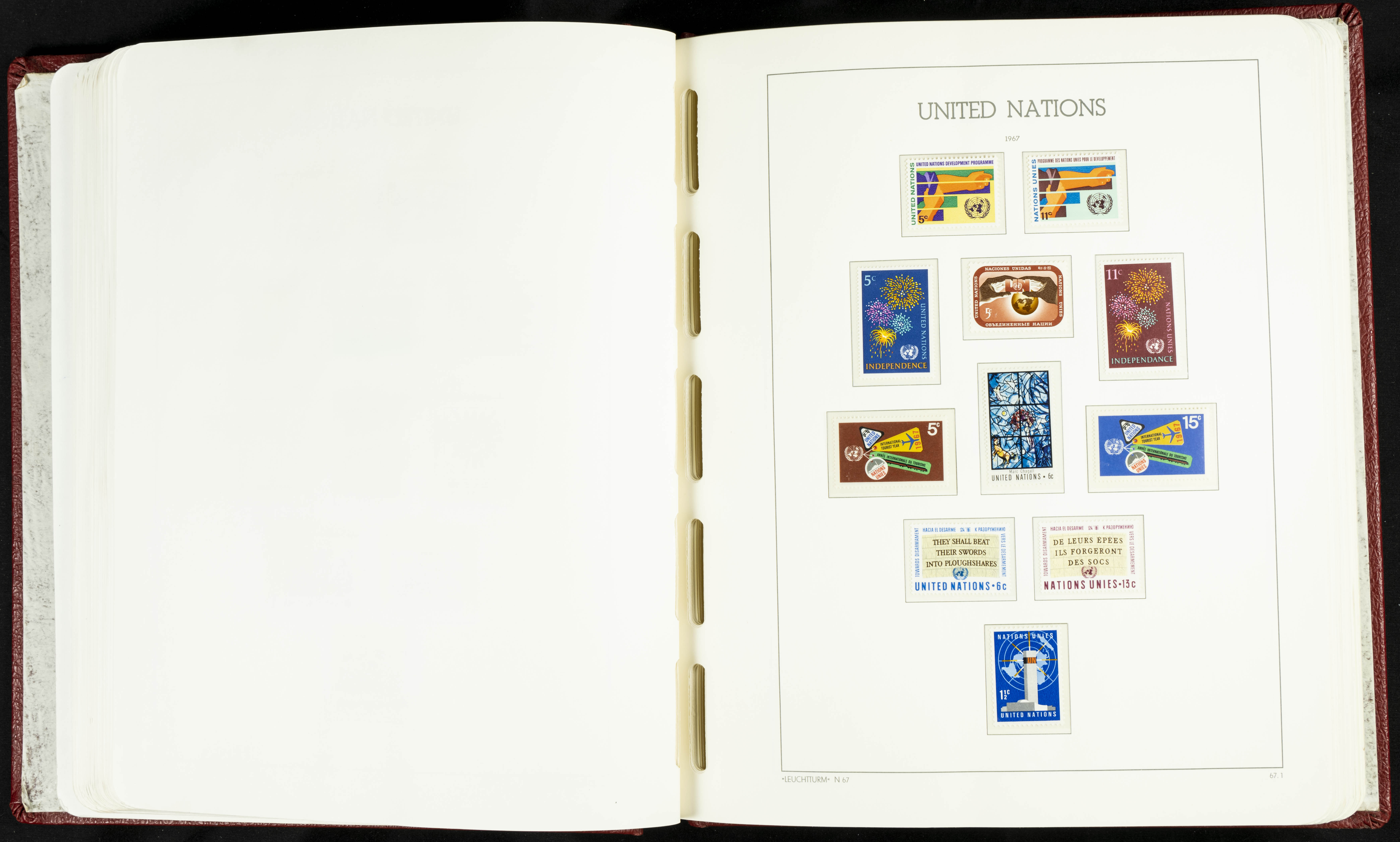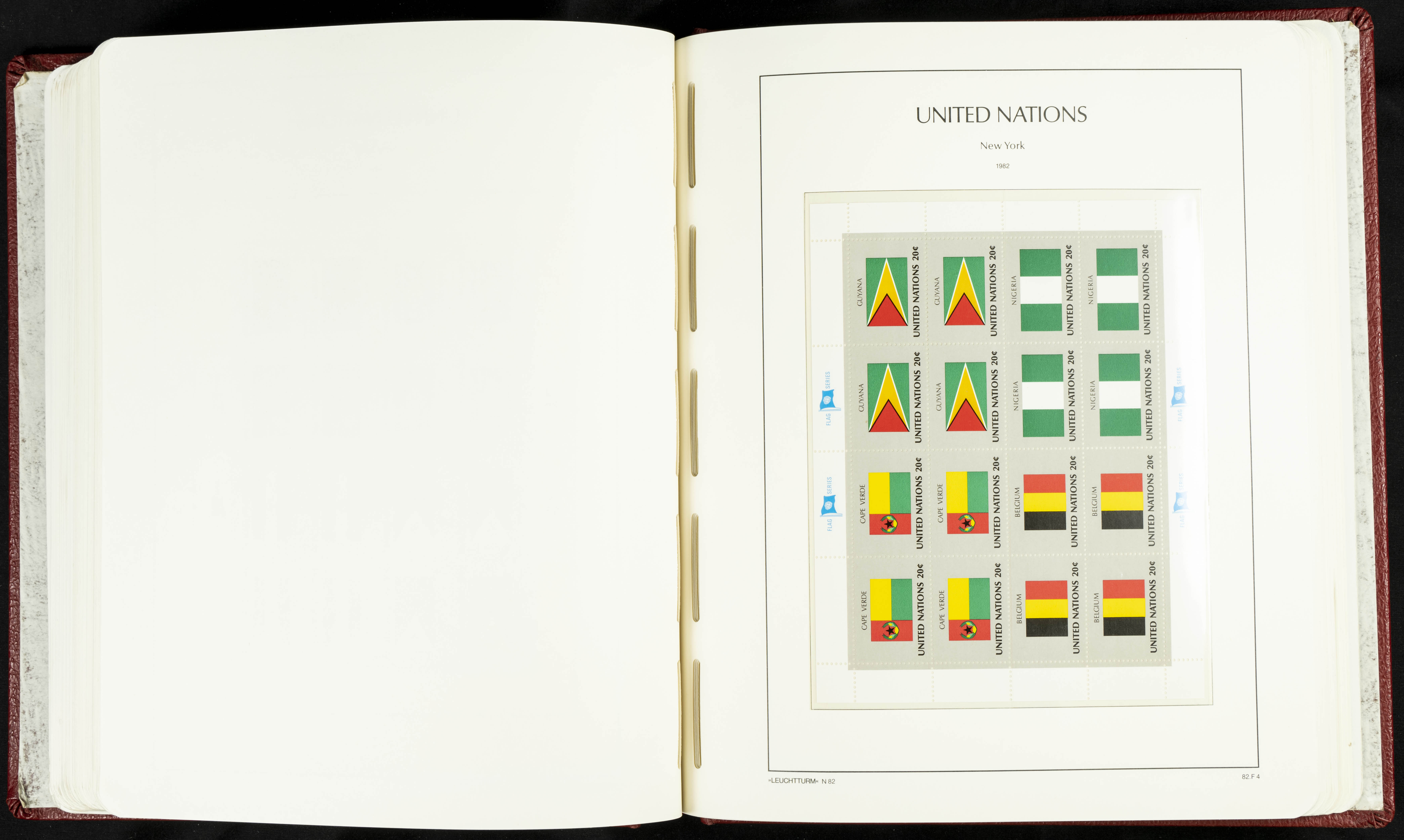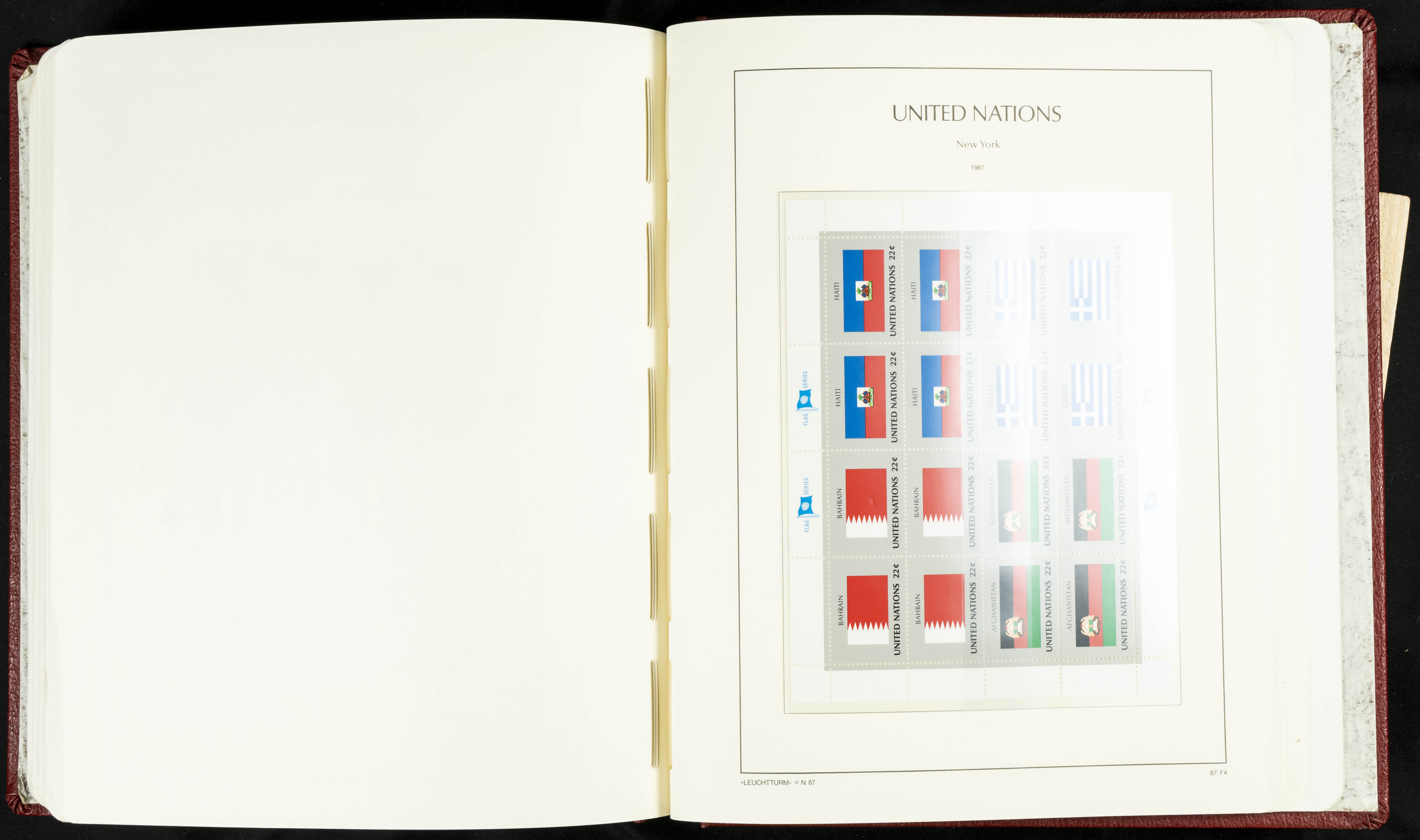 ★★(1951ca). Colección completa de Naciones Unidas (Nueva York, Ginebra y Viena) entre 1951 y 2011, en nuevo y sin fijasellos (montada en álbumes Faro). ALTO VALOR DE CATALOGO. A EXAMINAR.