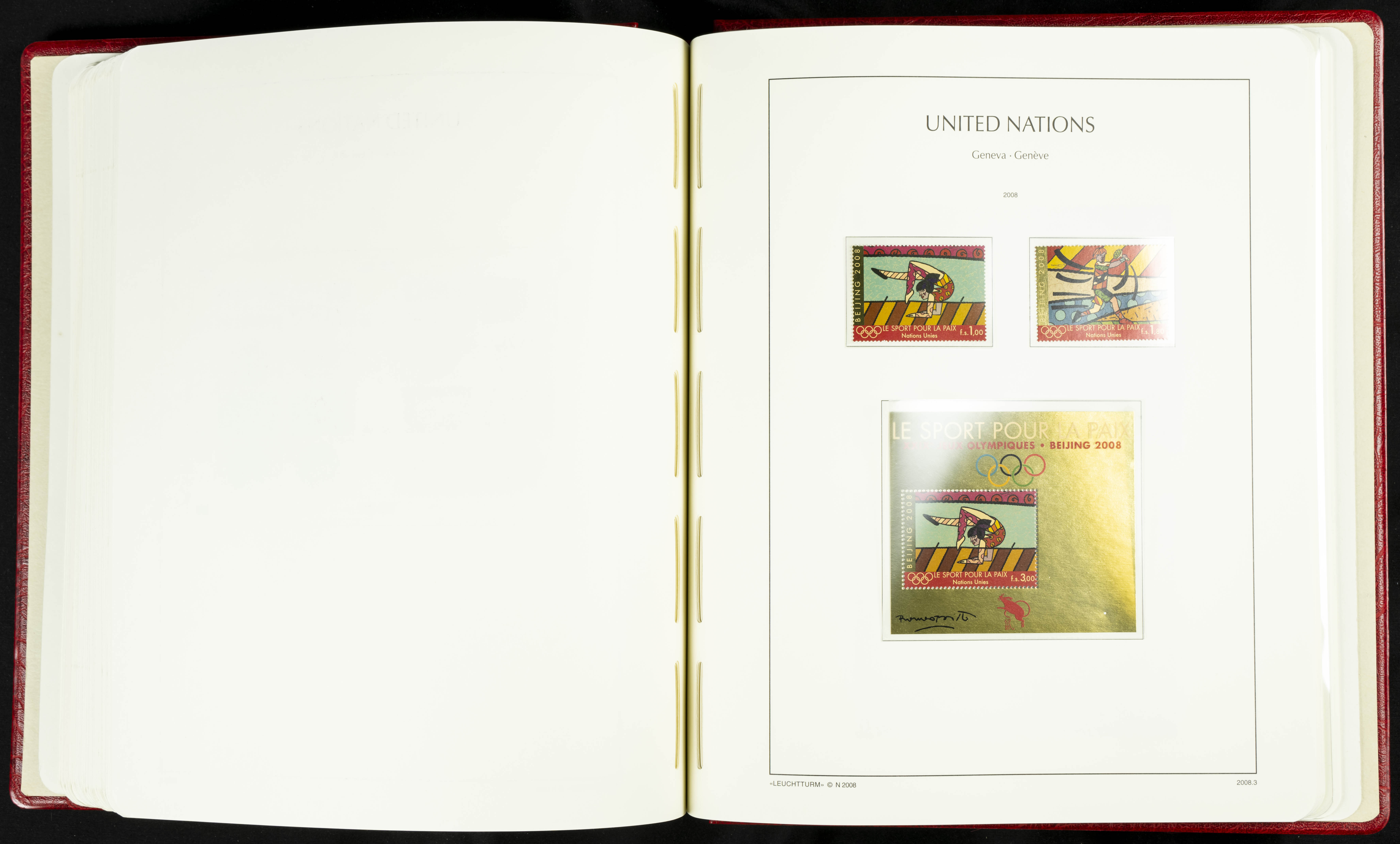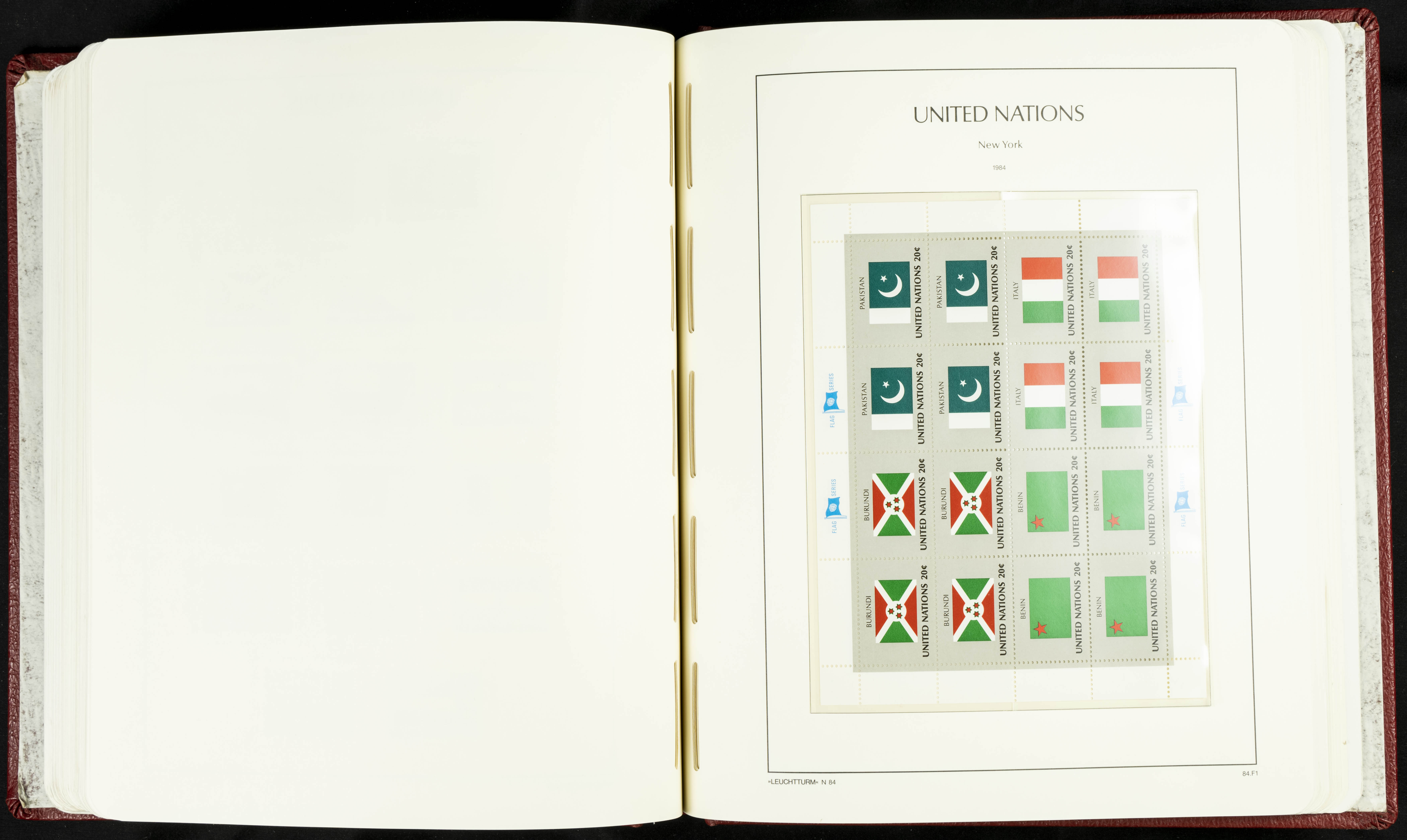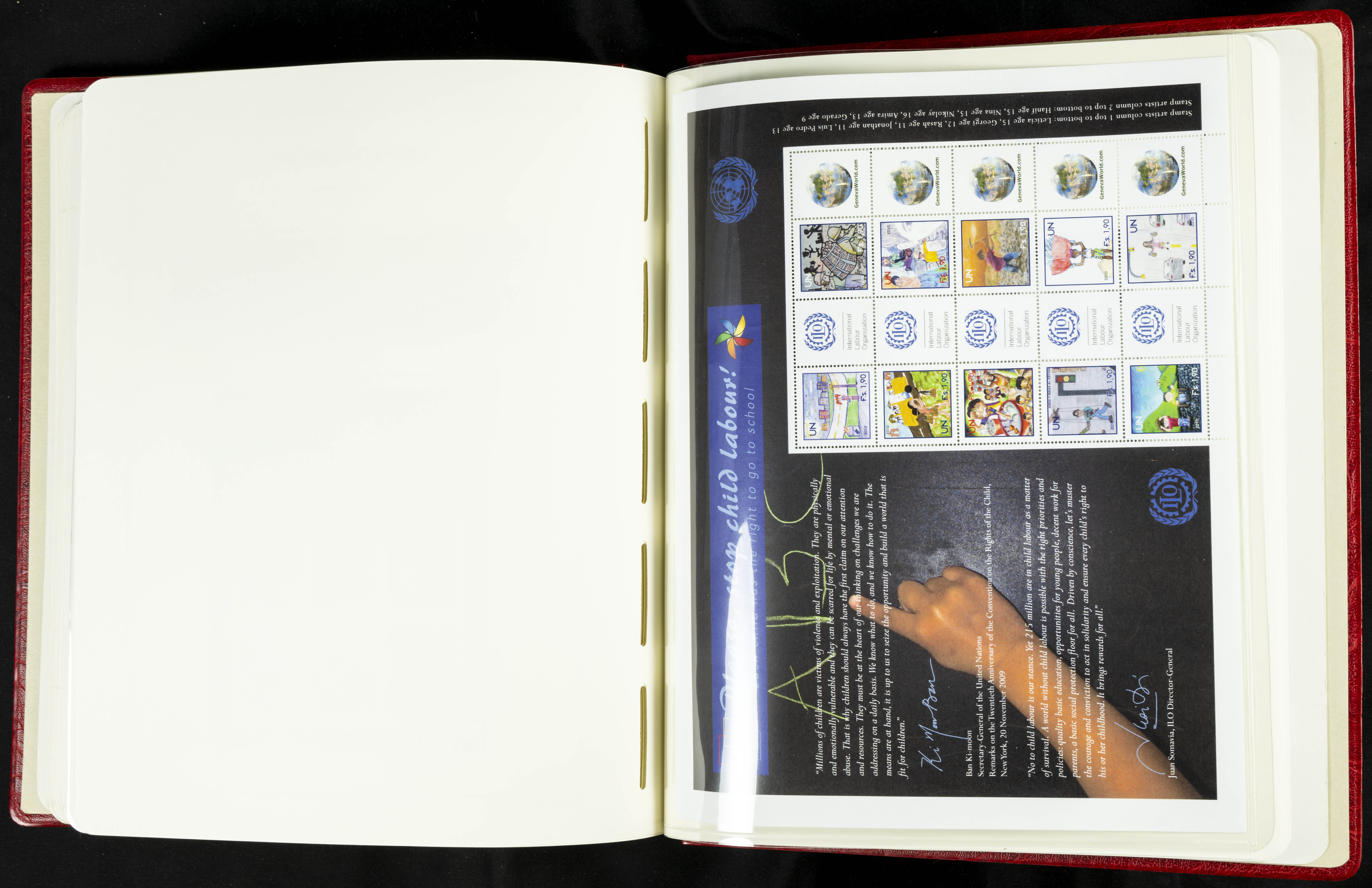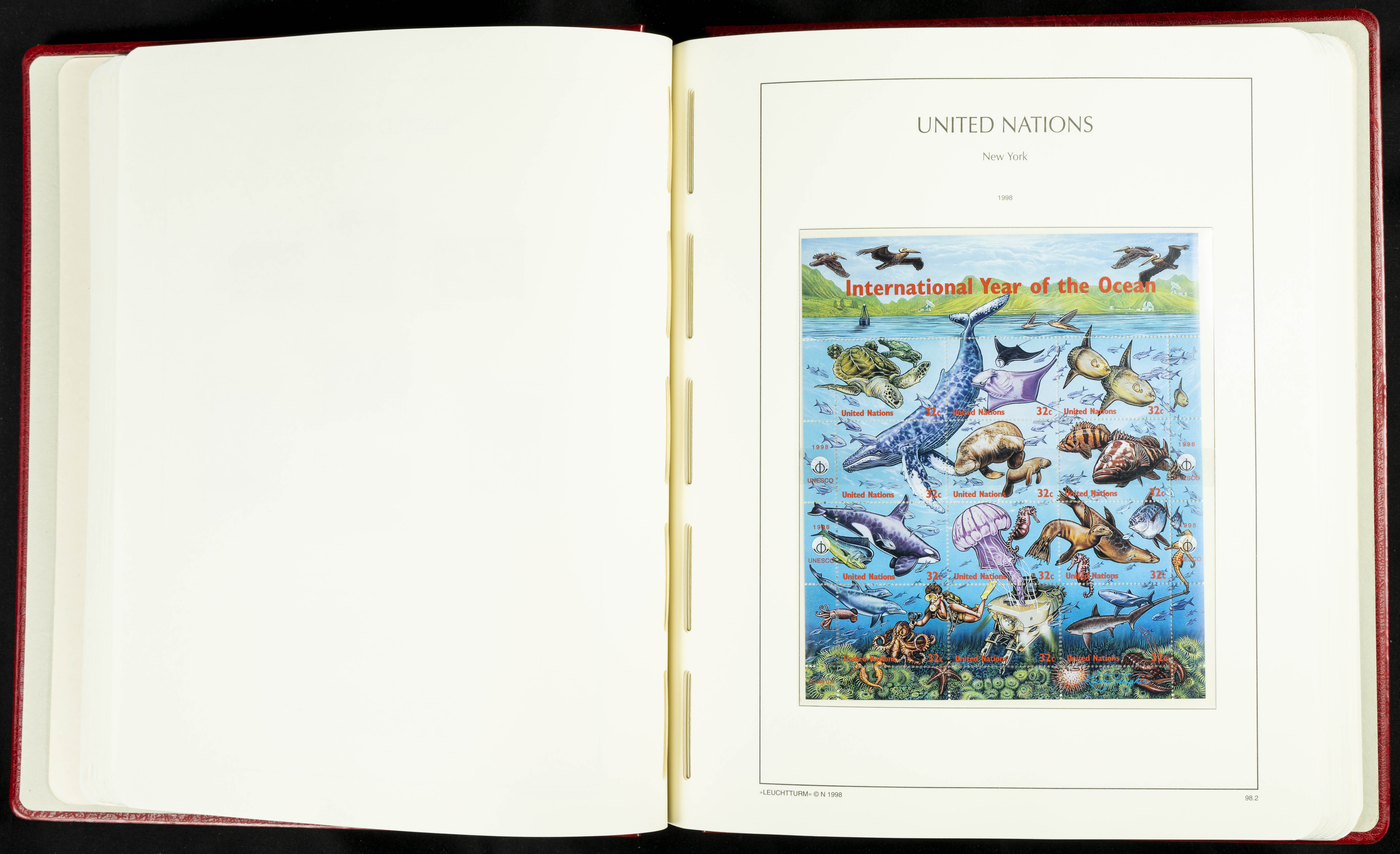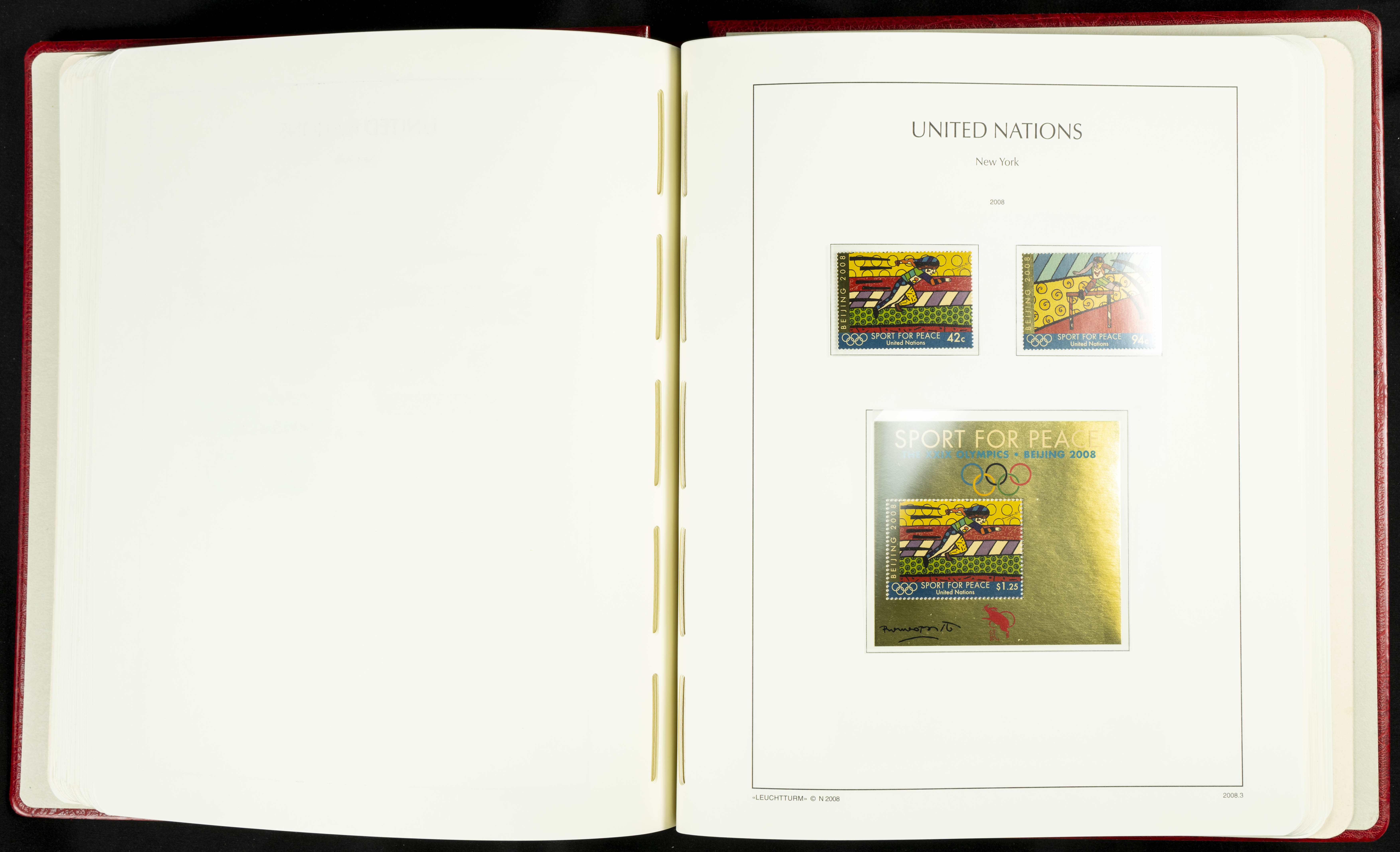 ★★(1951ca). Colección completa de Naciones Unidas (Nueva York, Ginebra y Viena) entre 1951 y 2011, en nuevo y sin fijasellos (montada en álbumes Faro). ALTO VALOR DE CATALOGO. A EXAMINAR.