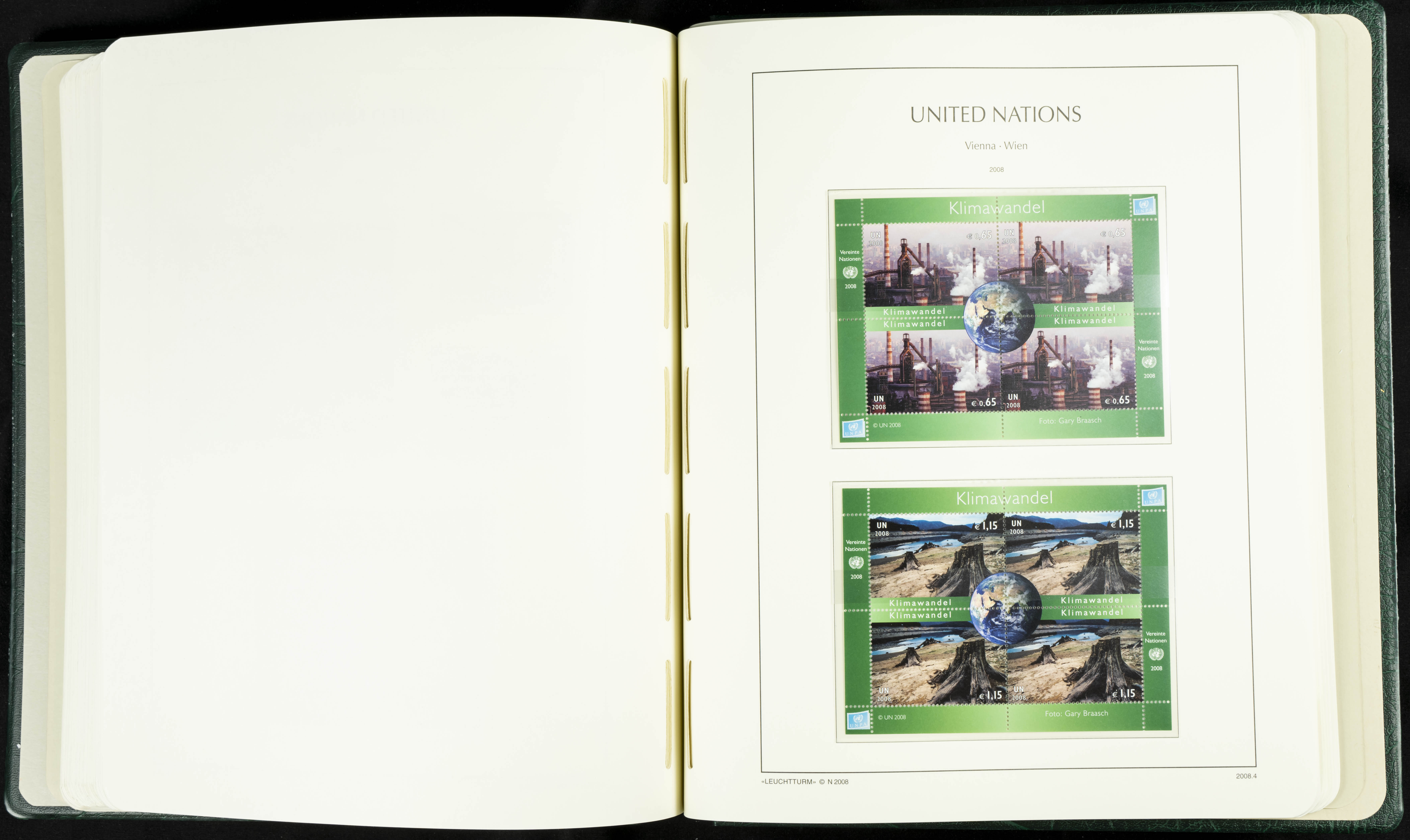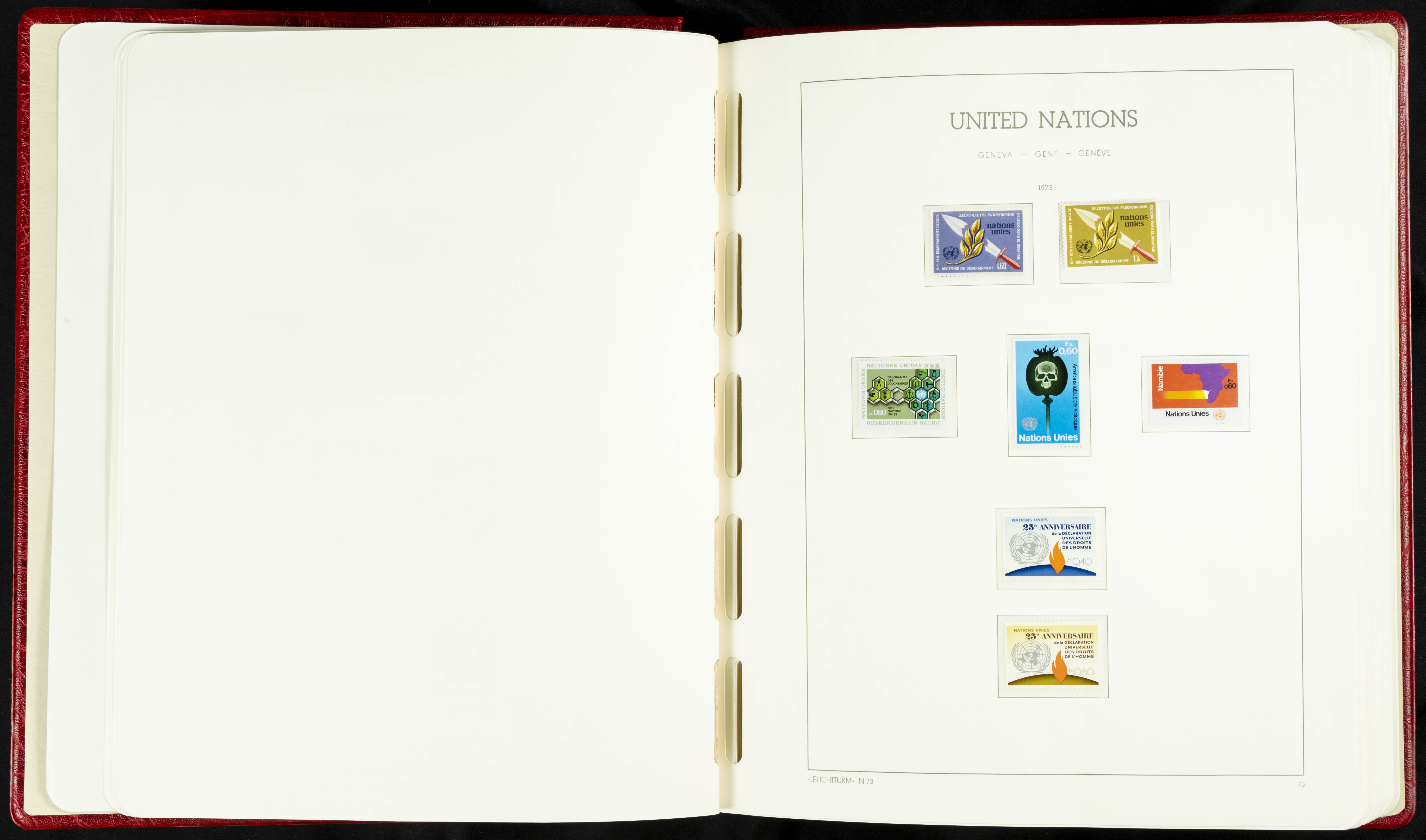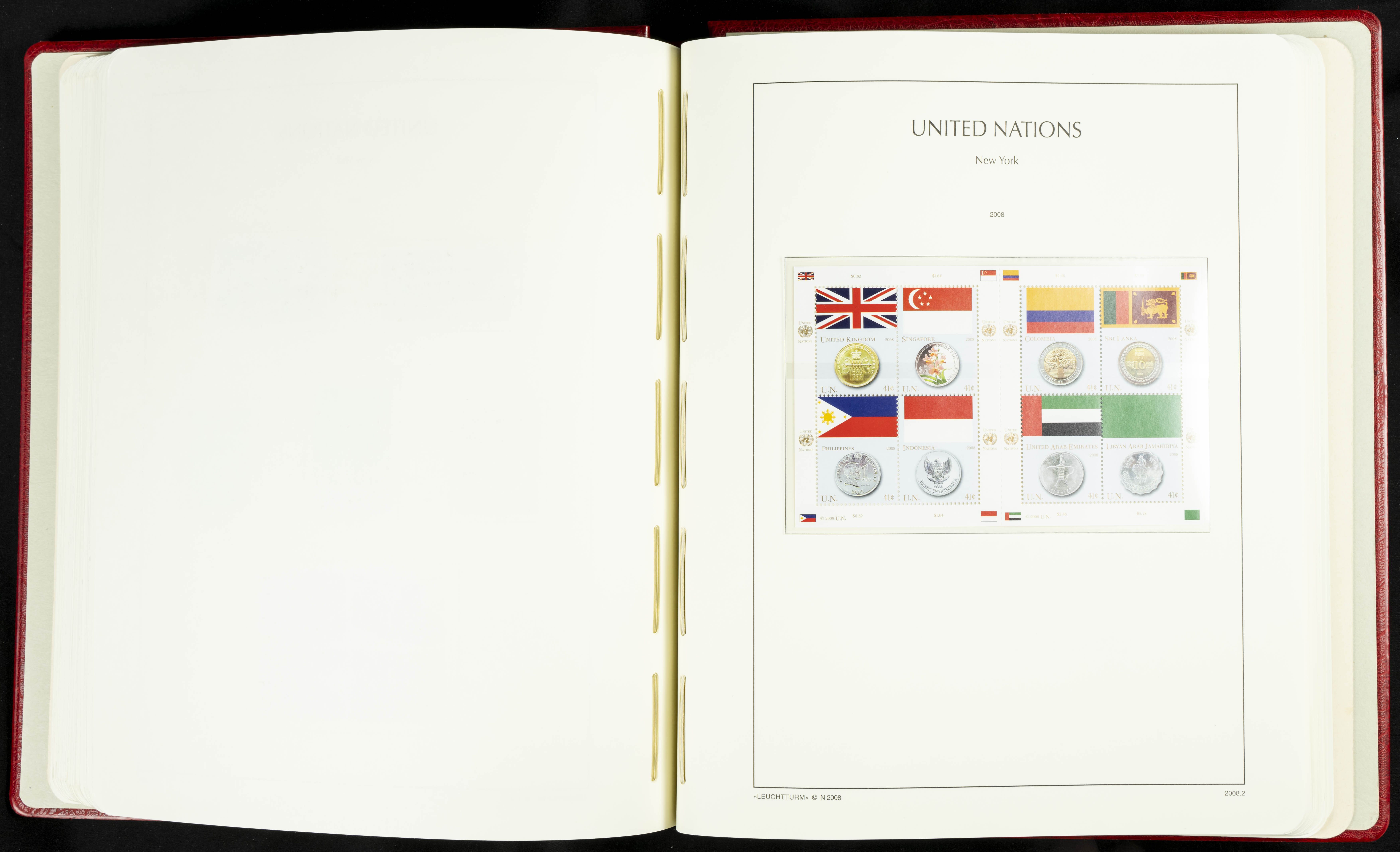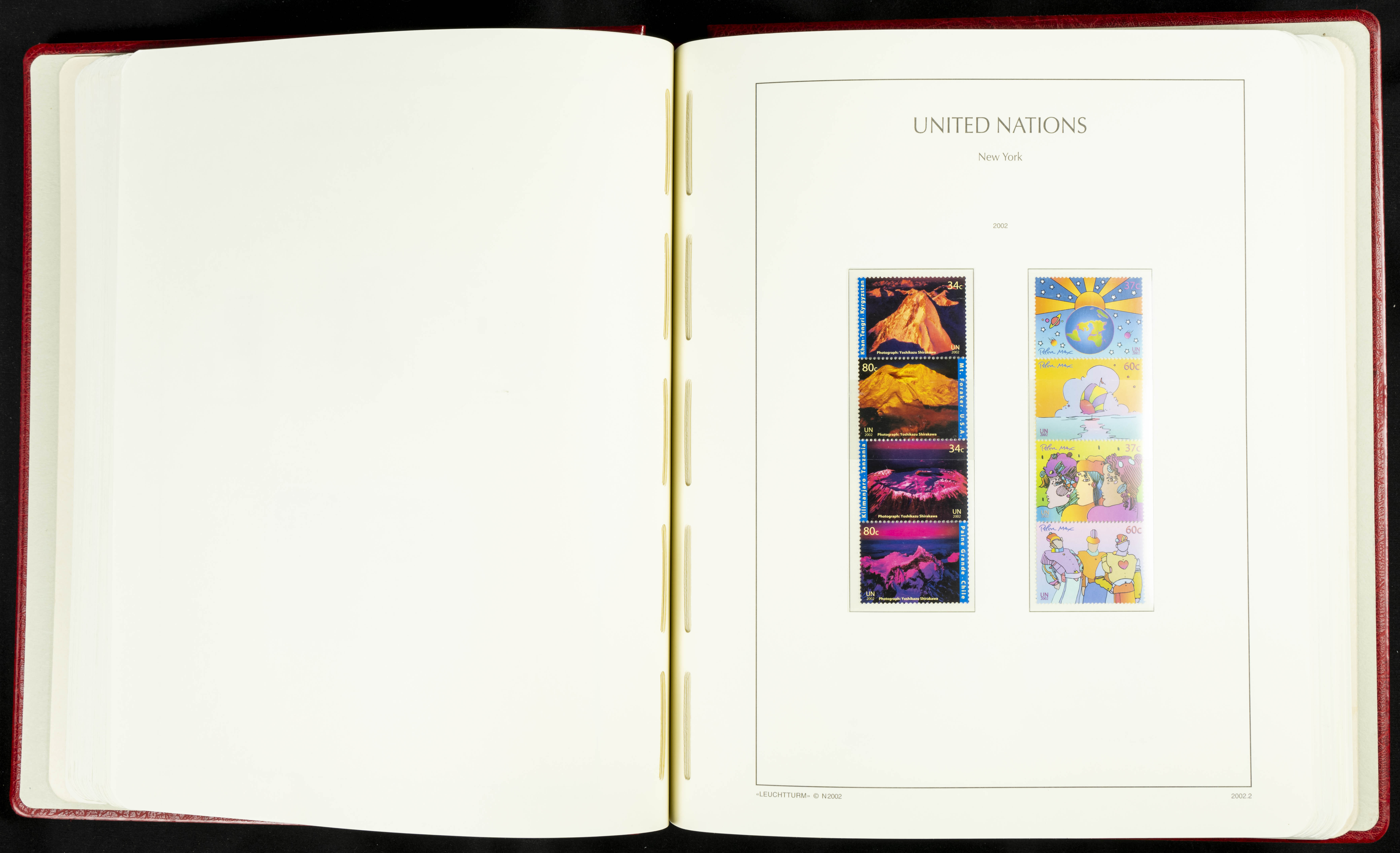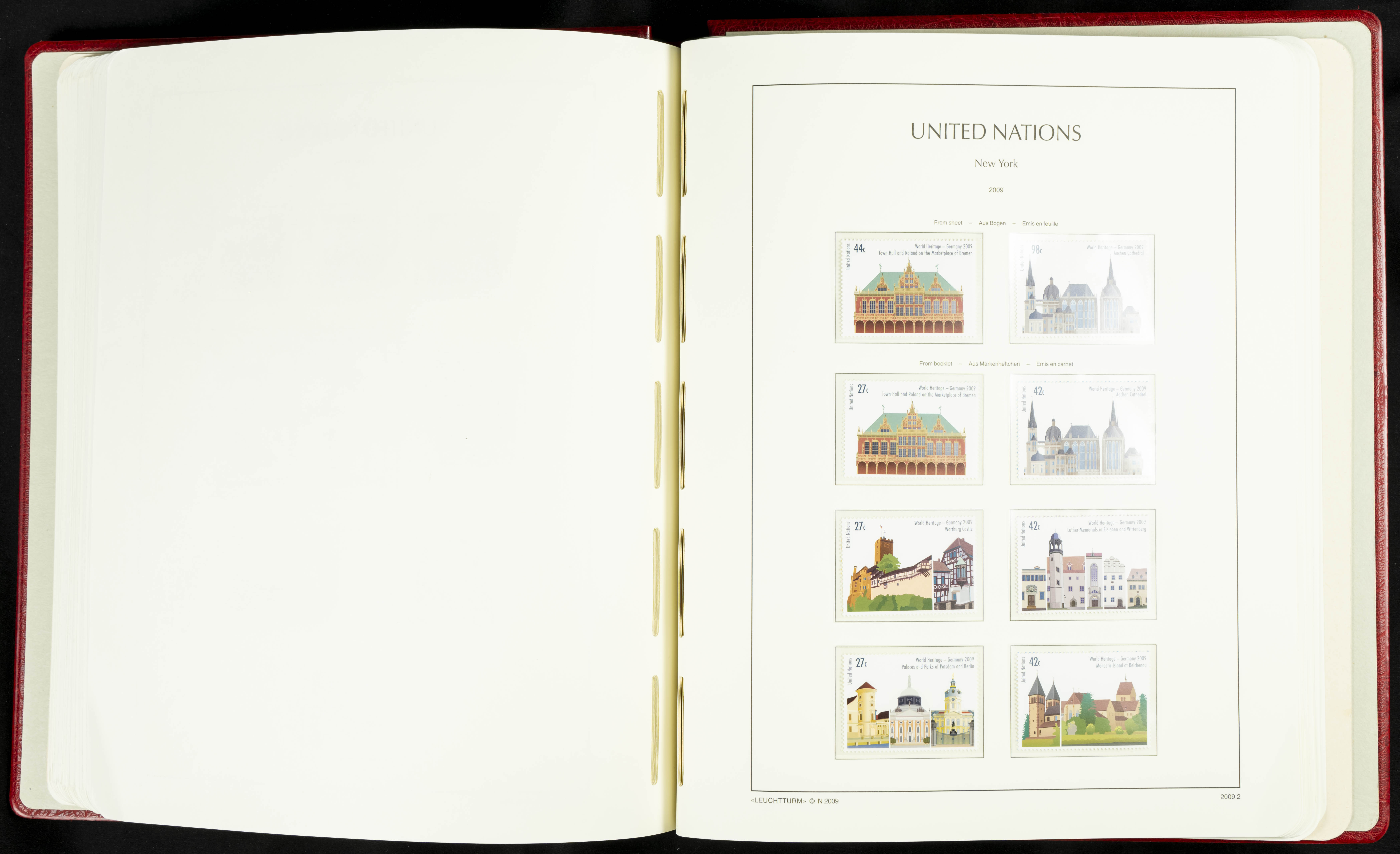 ★★(1951ca). Colección completa de Naciones Unidas (Nueva York, Ginebra y Viena) entre 1951 y 2011, en nuevo y sin fijasellos (montada en álbumes Faro). ALTO VALOR DE CATALOGO. A EXAMINAR.