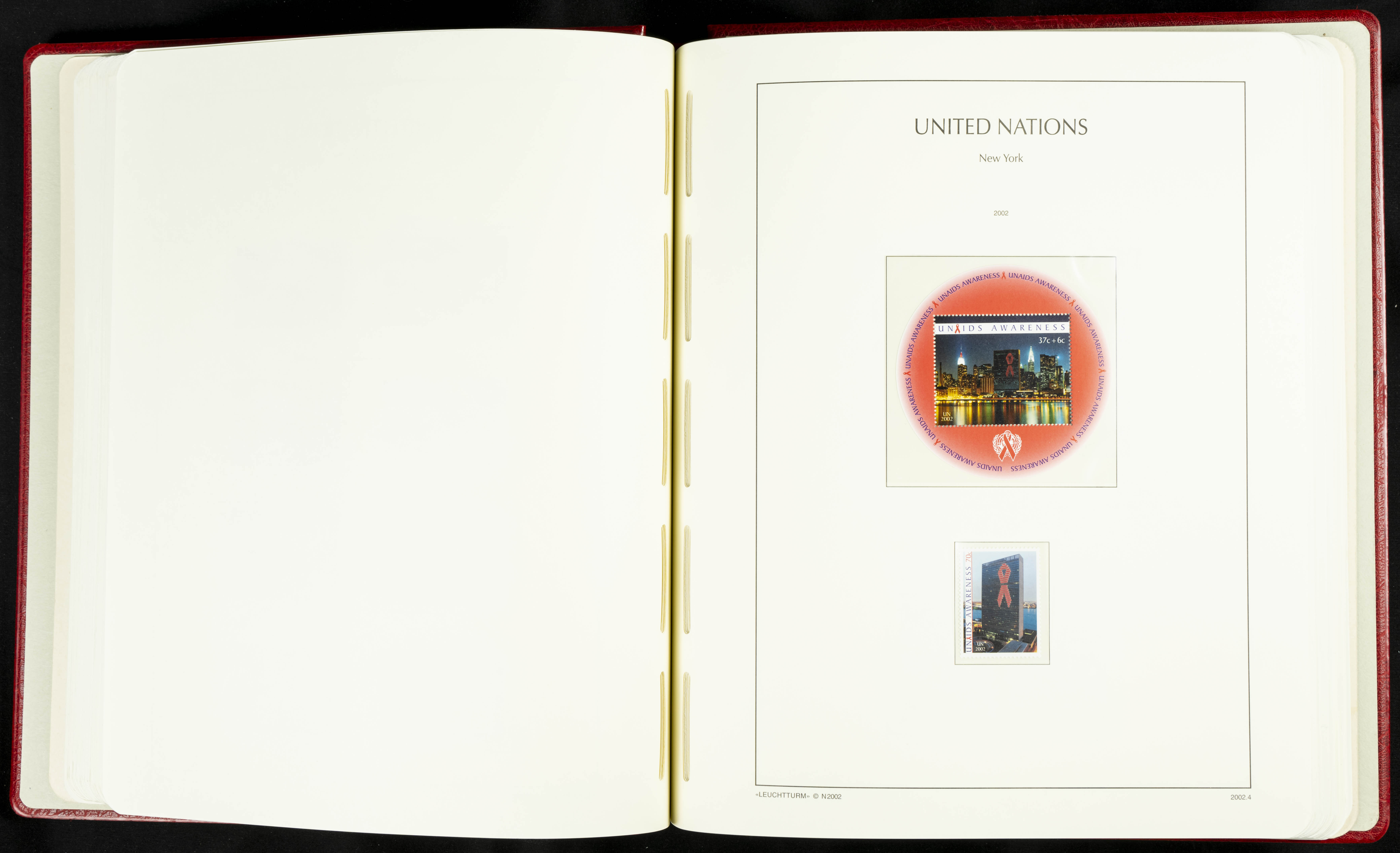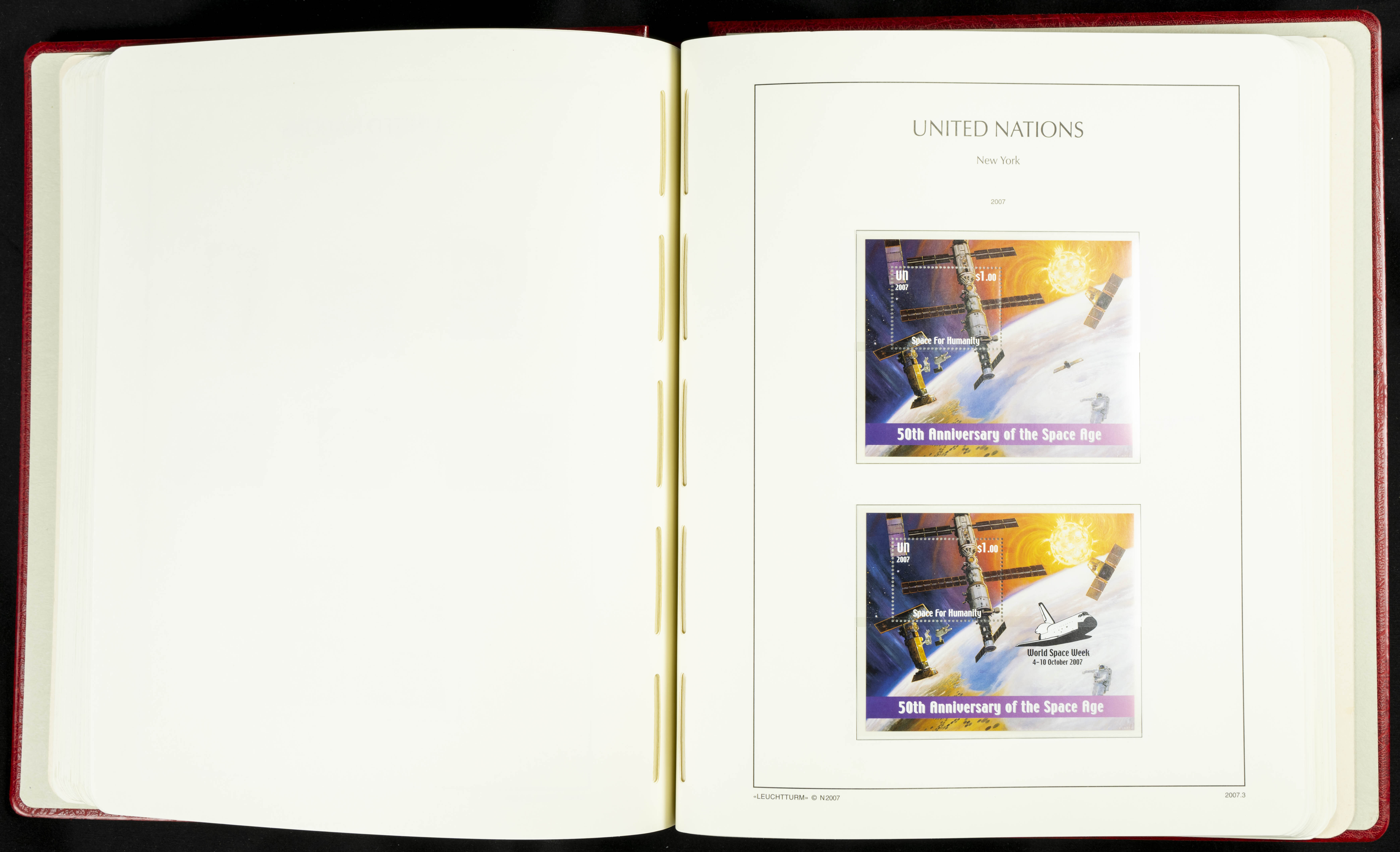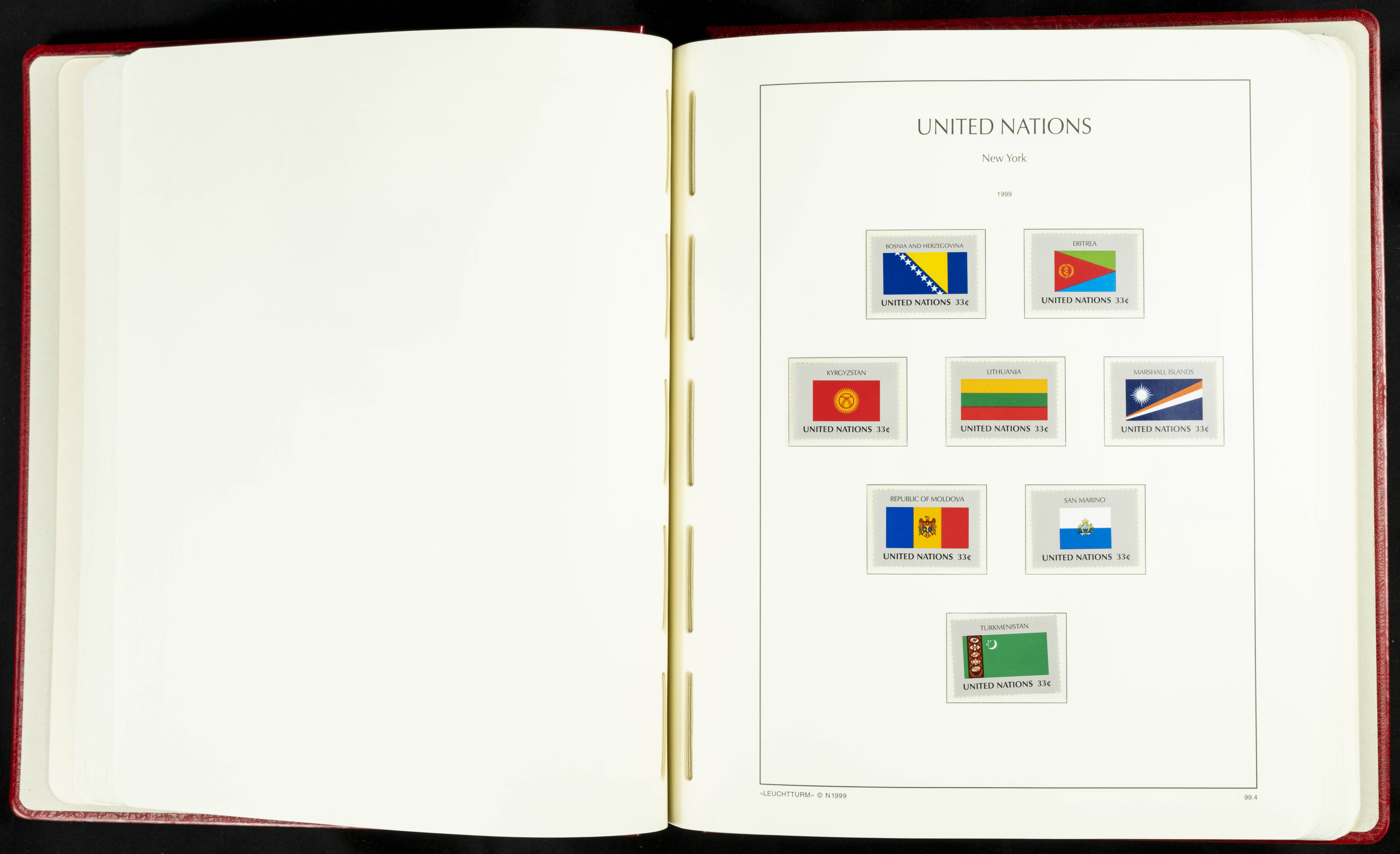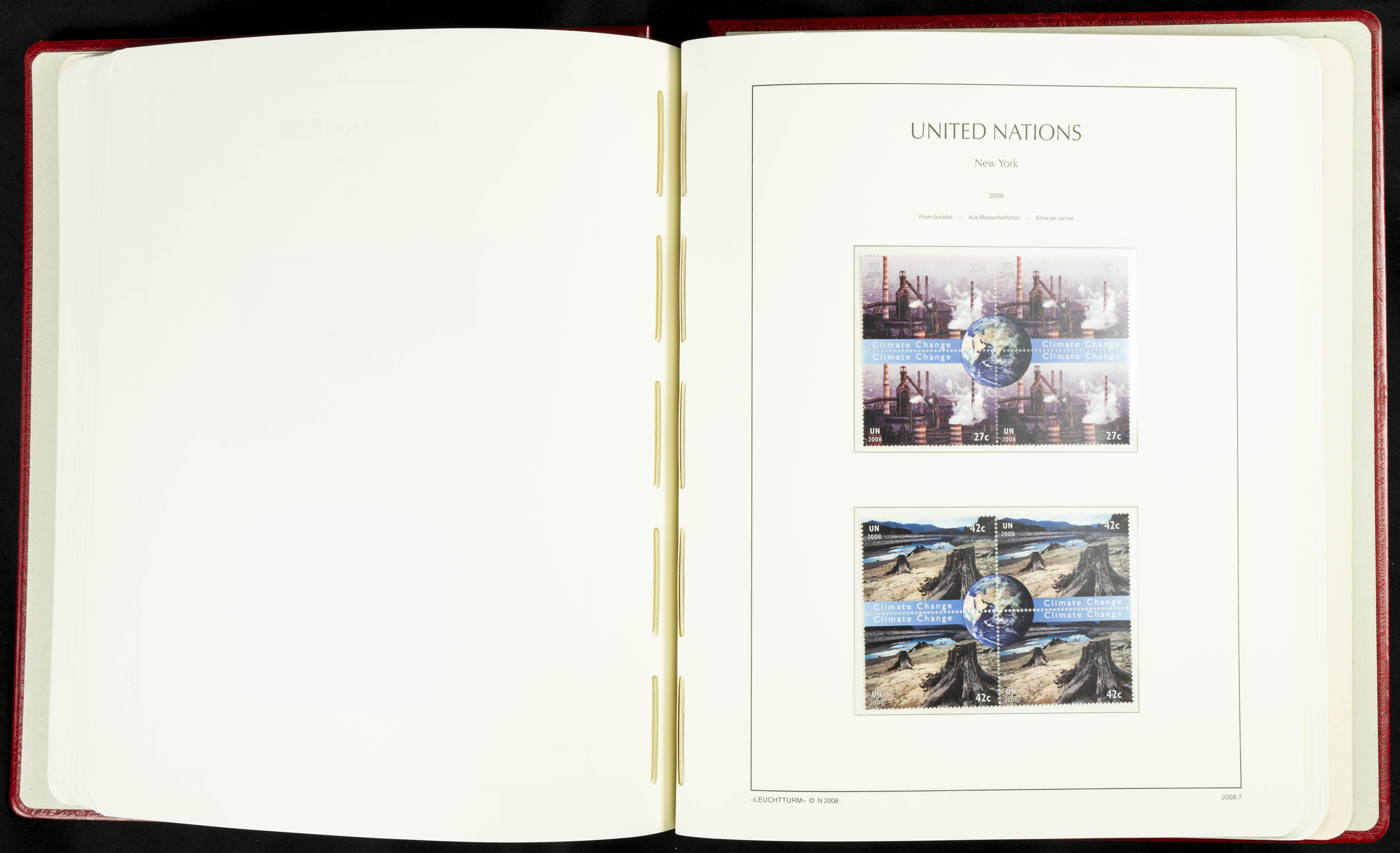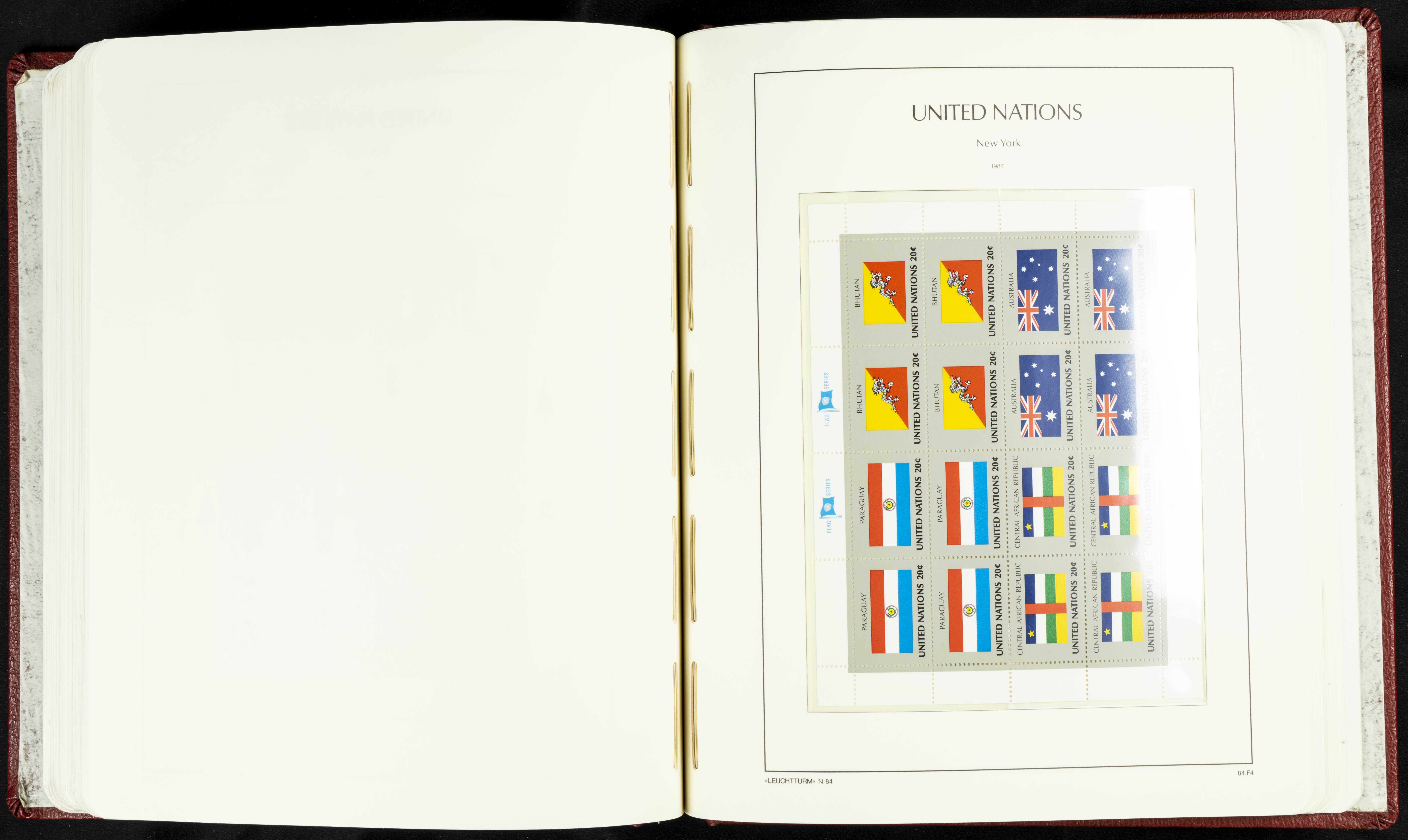 ★★(1951ca). Colección completa de Naciones Unidas (Nueva York, Ginebra y Viena) entre 1951 y 2011, en nuevo y sin fijasellos (montada en álbumes Faro). ALTO VALOR DE CATALOGO. A EXAMINAR.