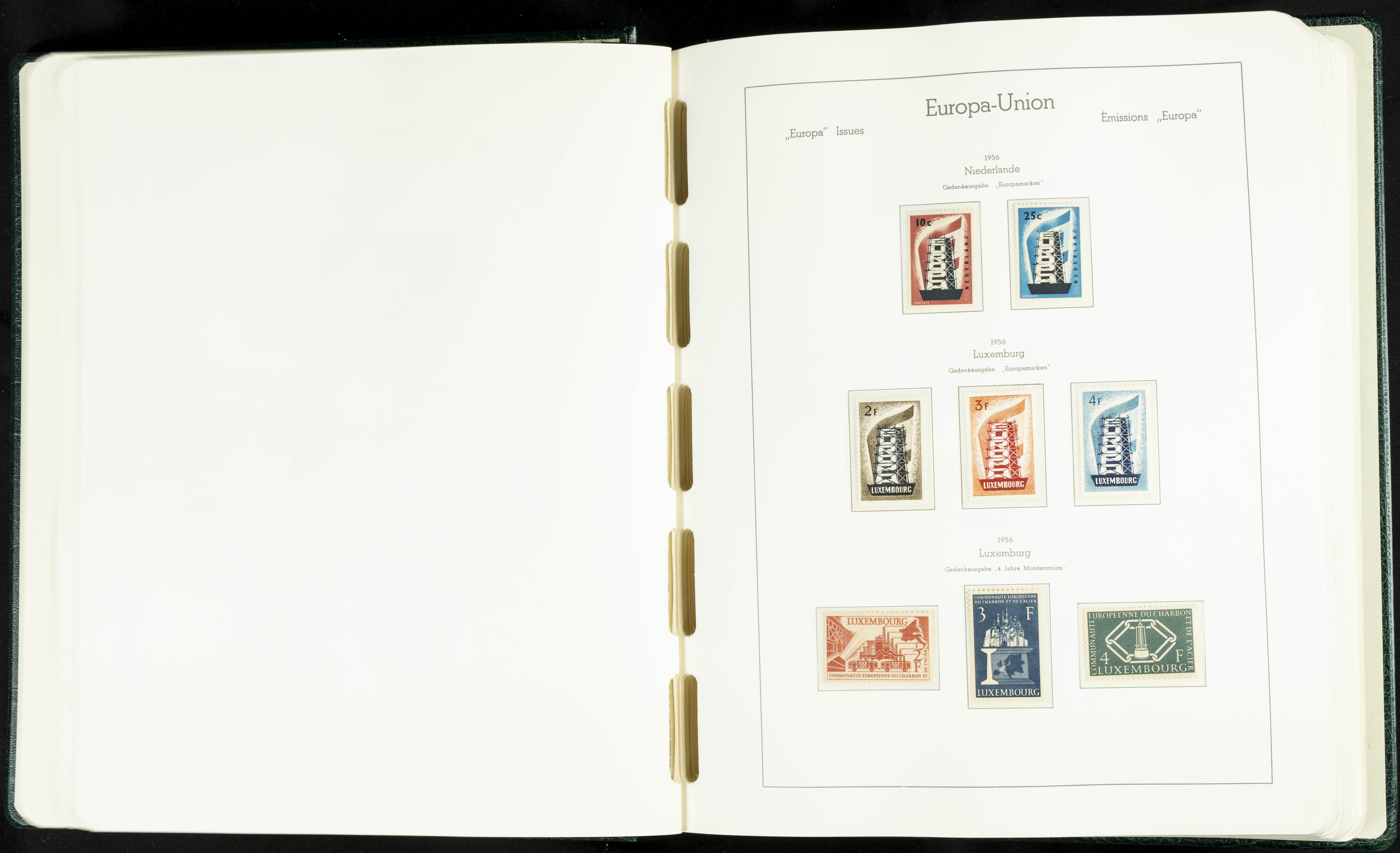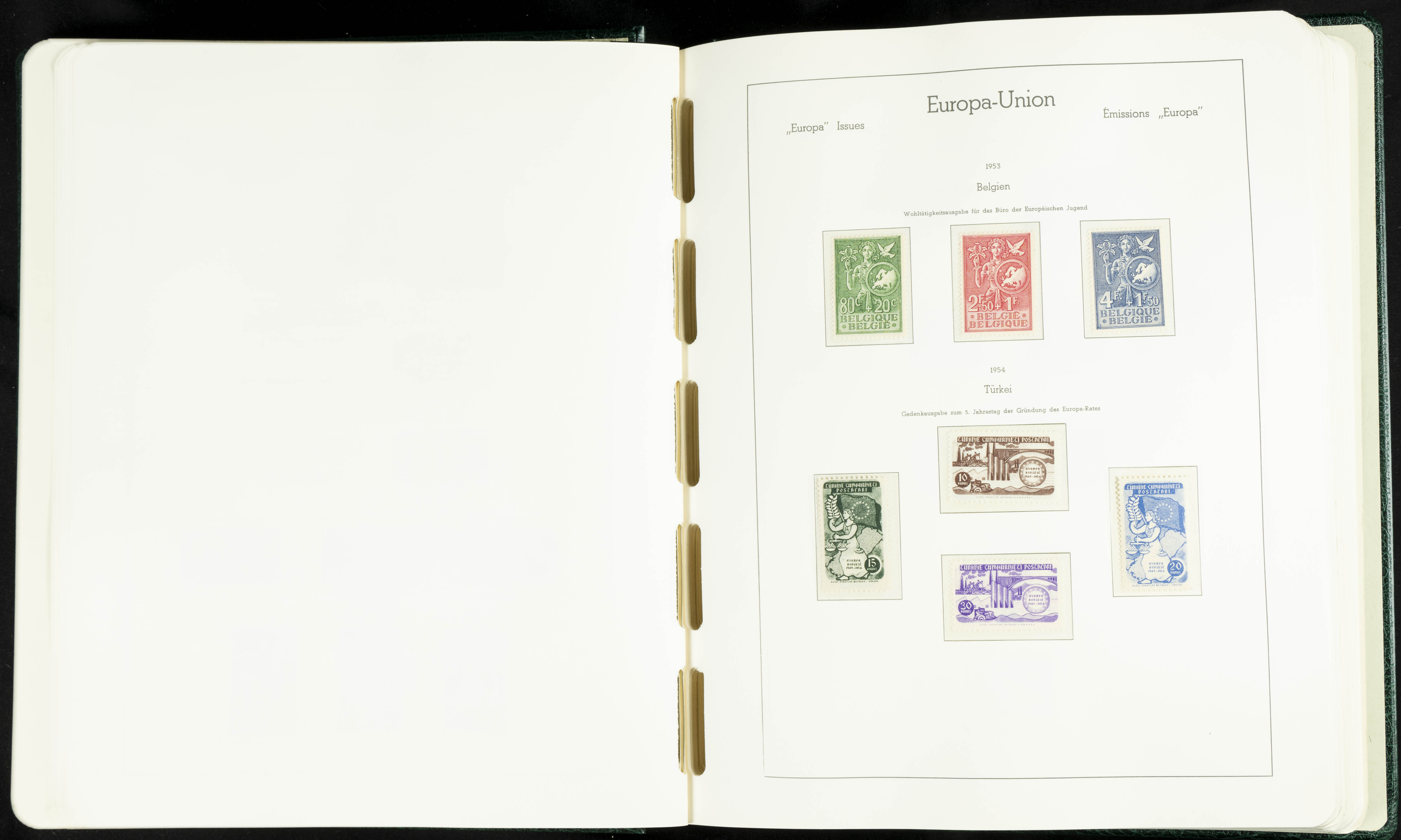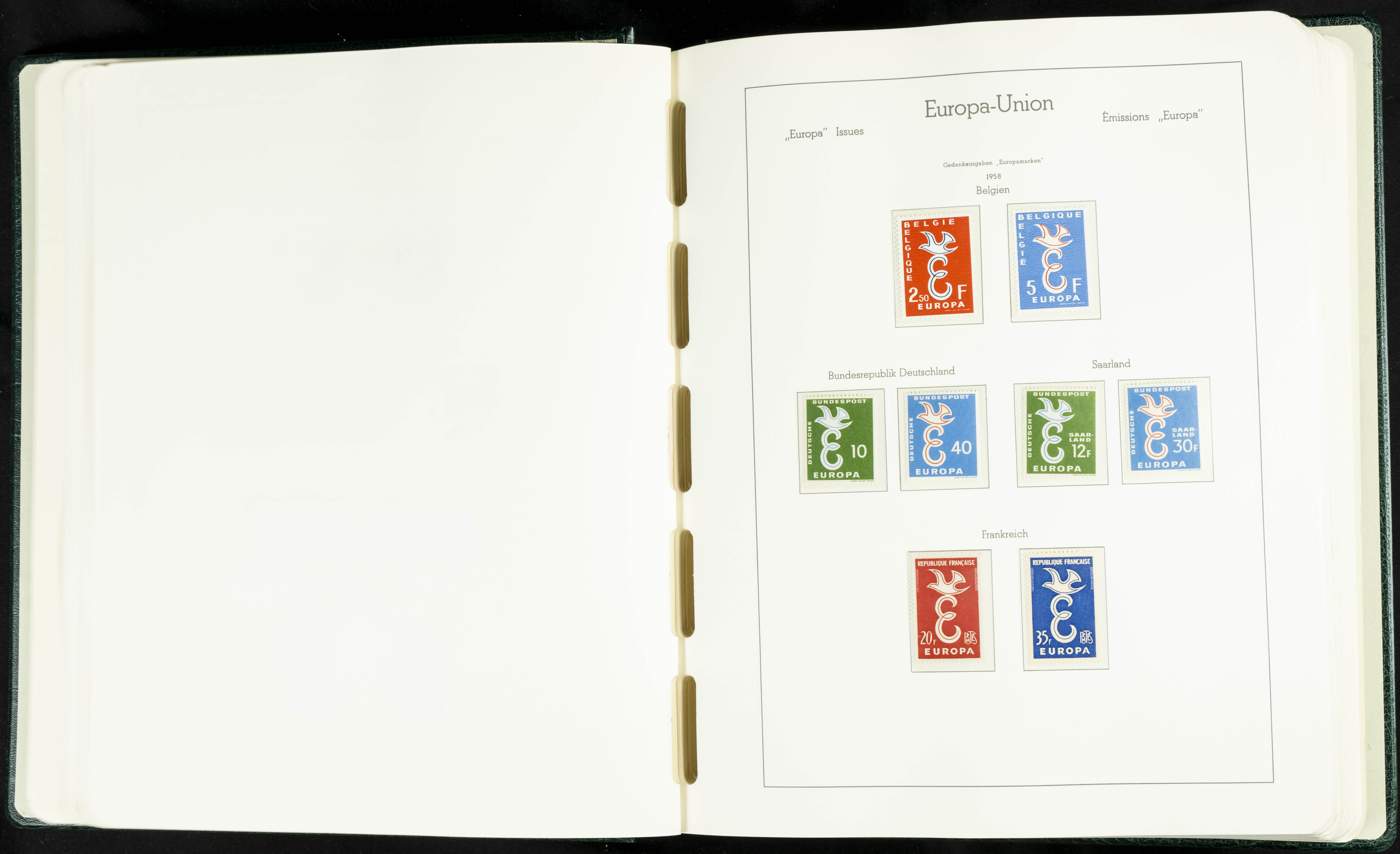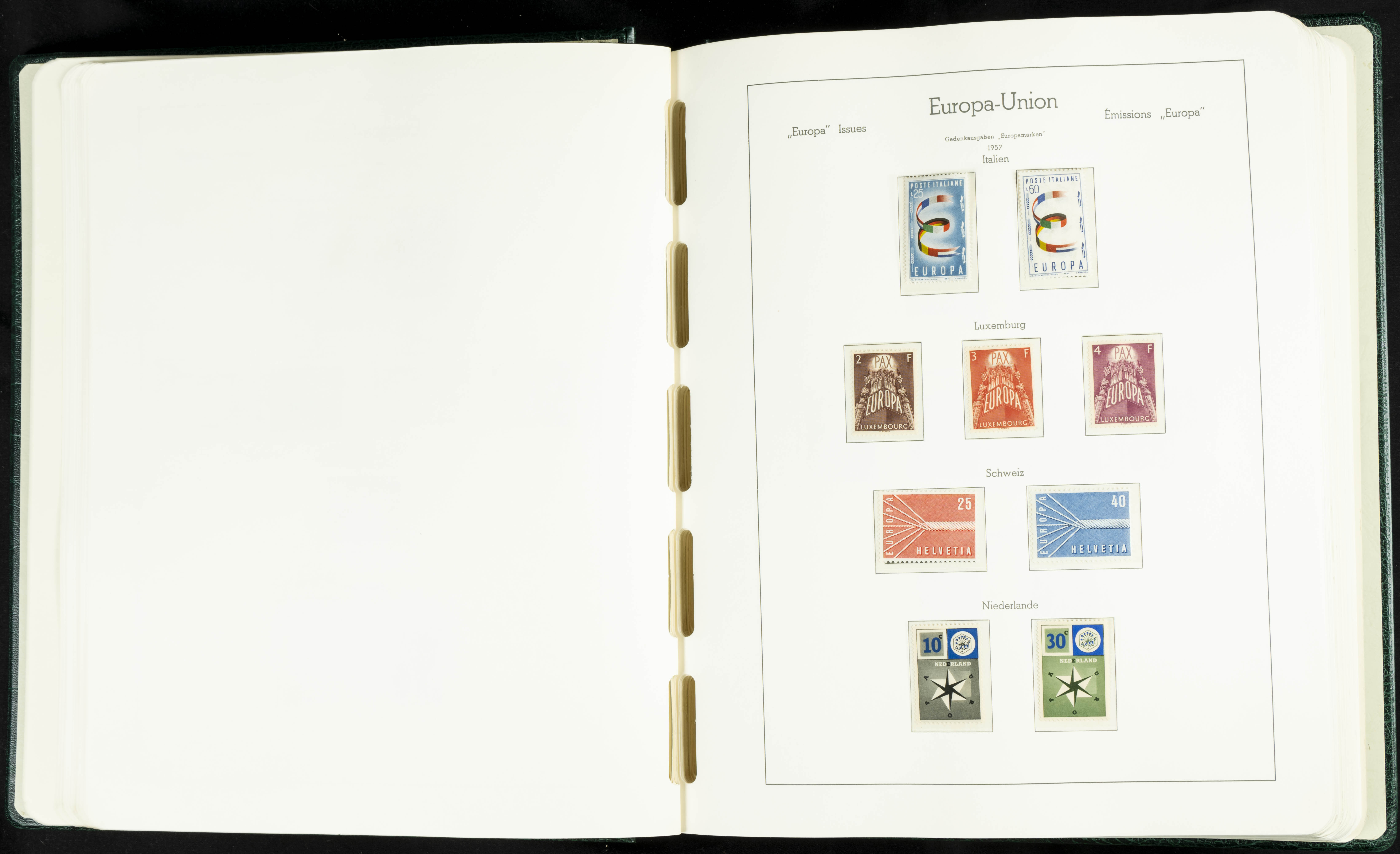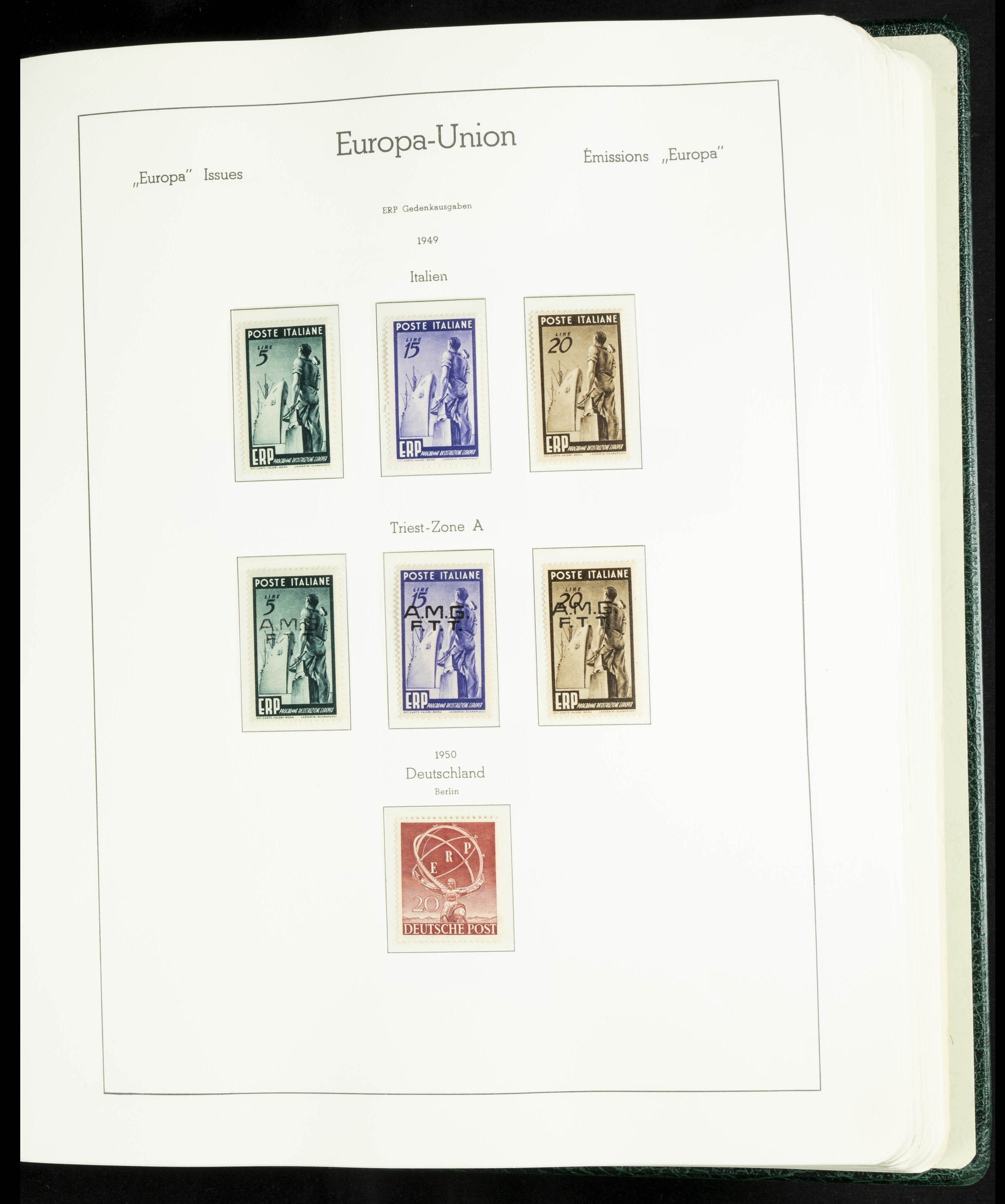 ★★/★(1949ca). Interesante y prácticamente completa colección del Tema Europa y Europeístico (excepto dos series de Italia y Trieste) entre 1949 y 1998, en nuevo sin fijasellos (montada en álbumes Faro). ALTISIMO VALOR DE CATALOGO. A EXAMINAR.