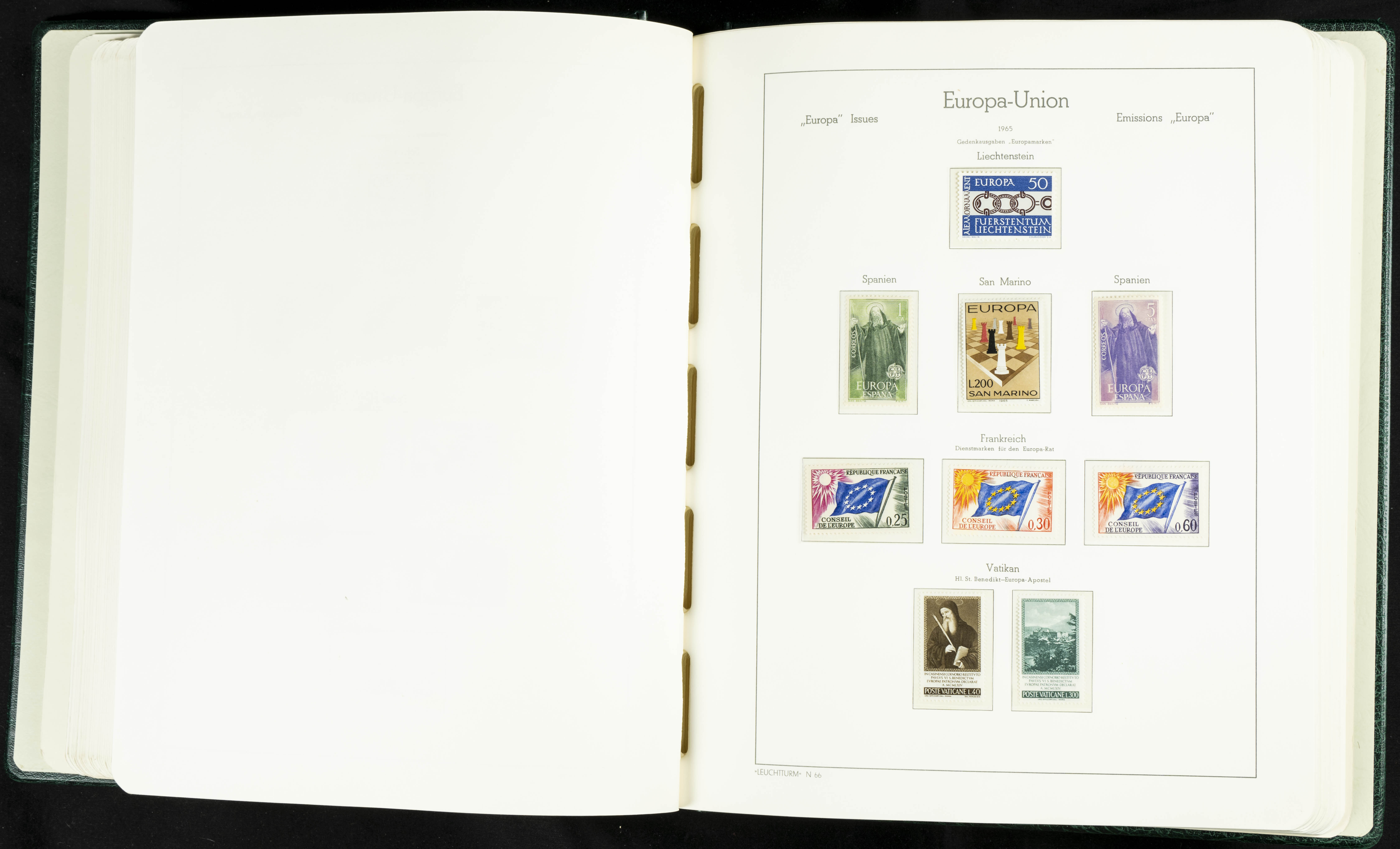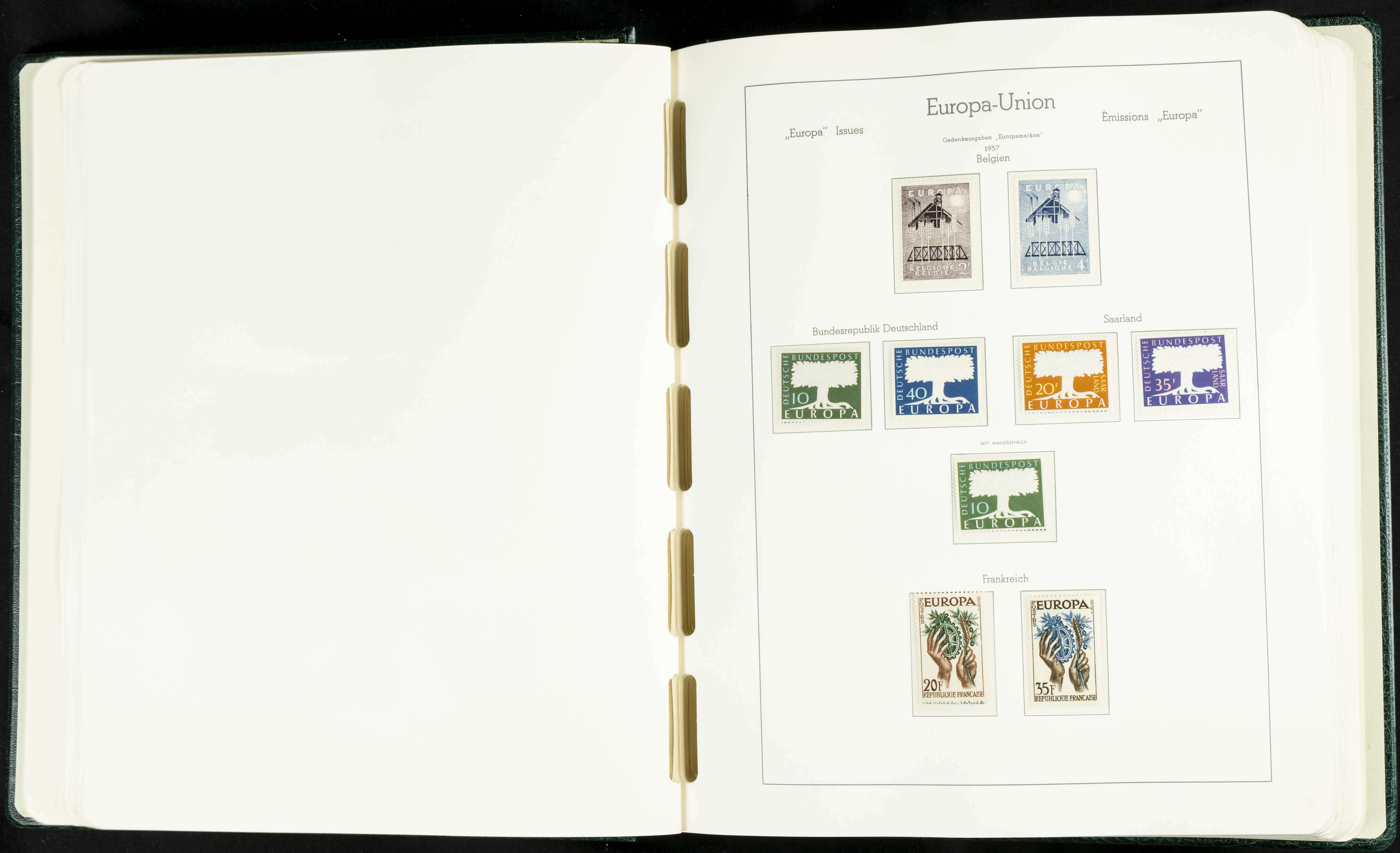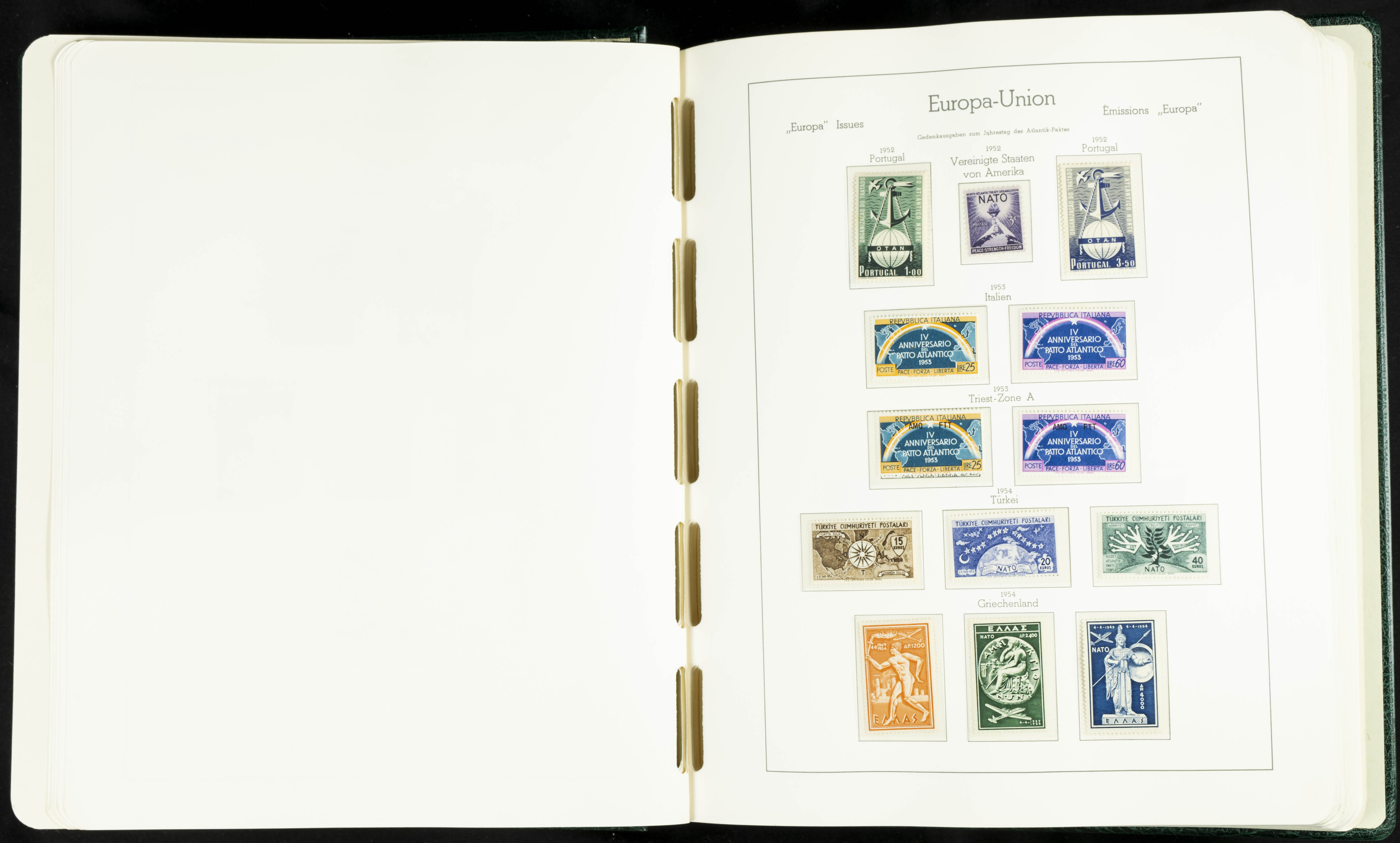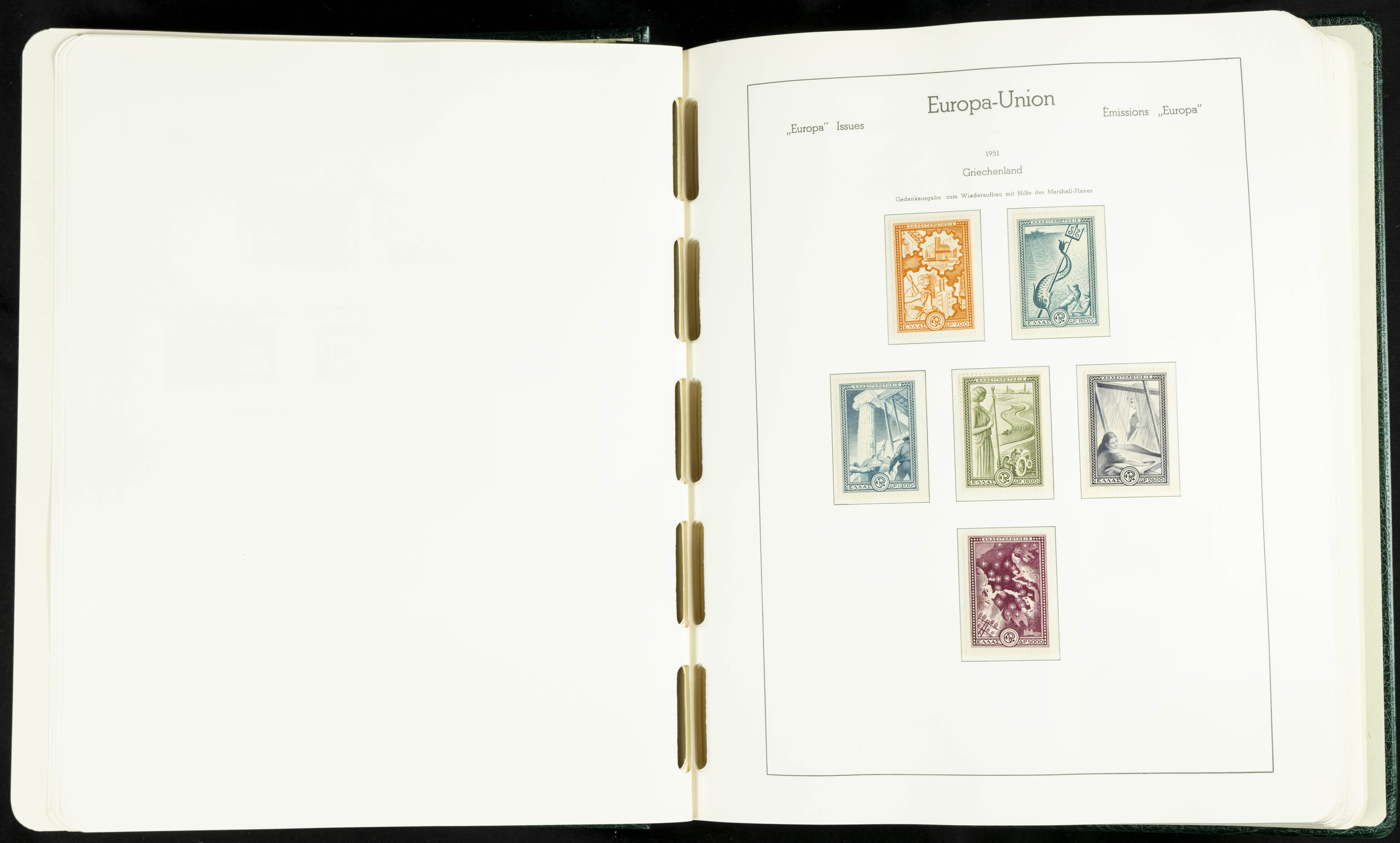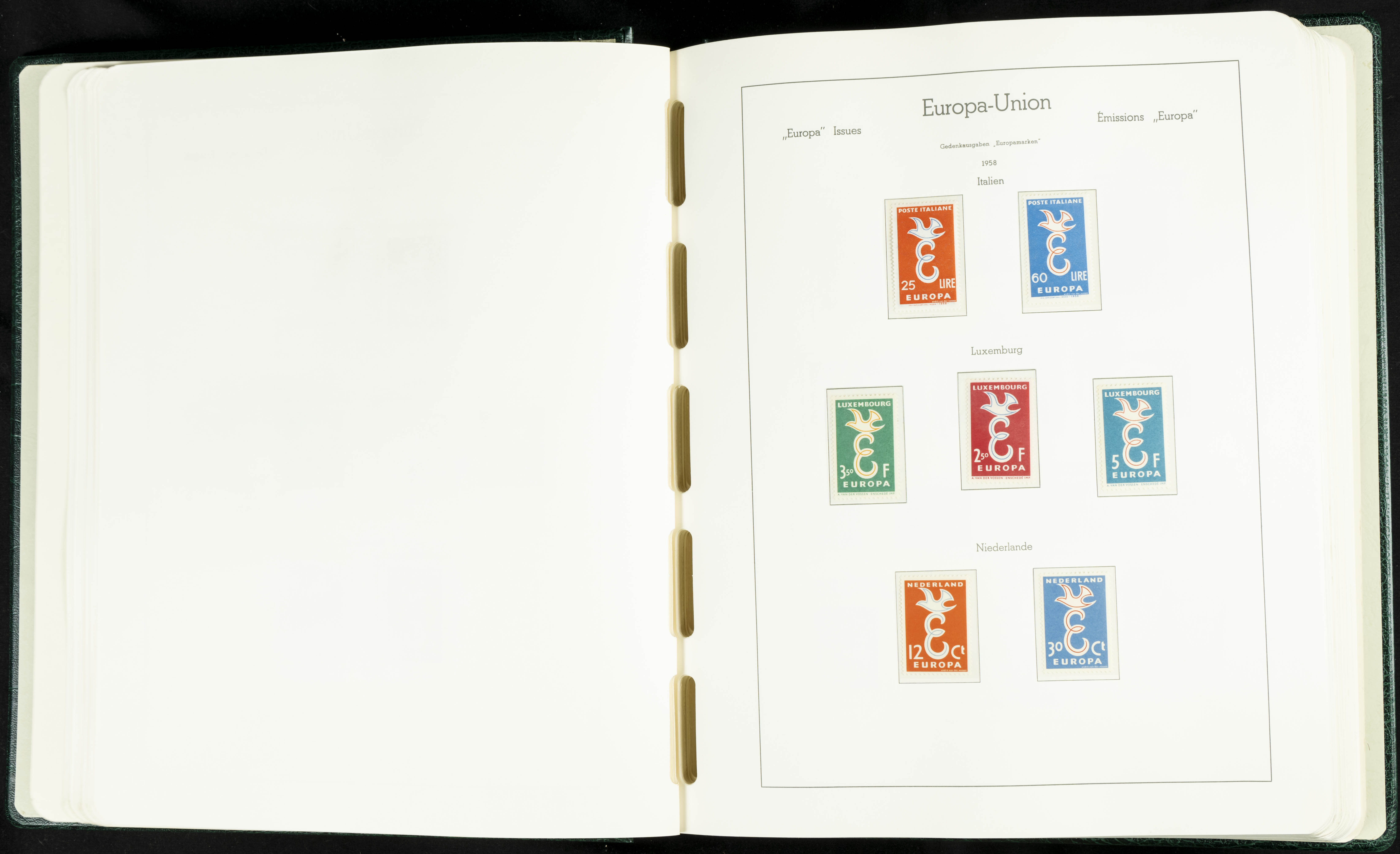 ★★/★(1949ca). Interesante y prácticamente completa colección del Tema Europa y Europeístico (excepto dos series de Italia y Trieste) entre 1949 y 1998, en nuevo sin fijasellos (montada en álbumes Faro). ALTISIMO VALOR DE CATALOGO. A EXAMINAR.