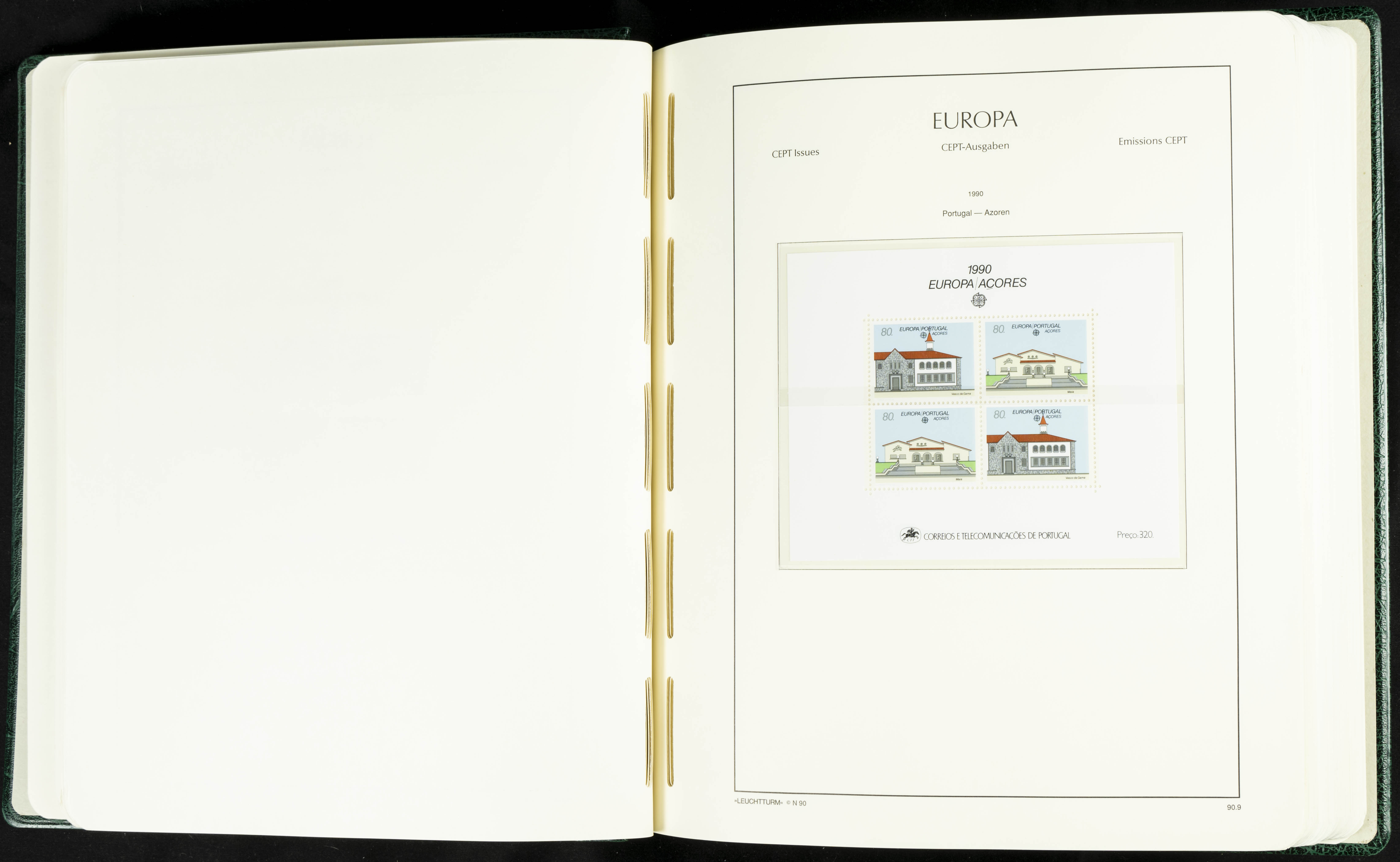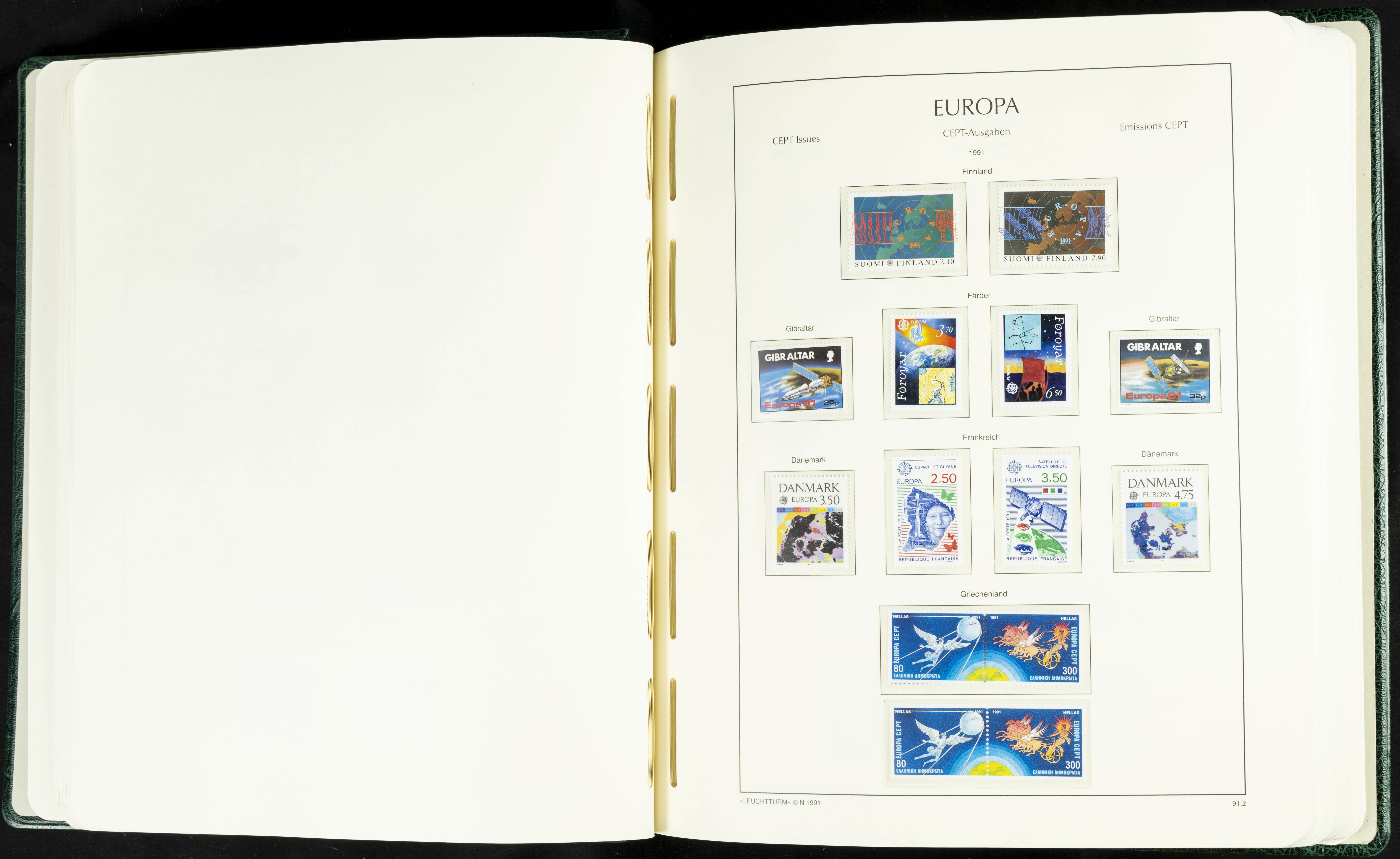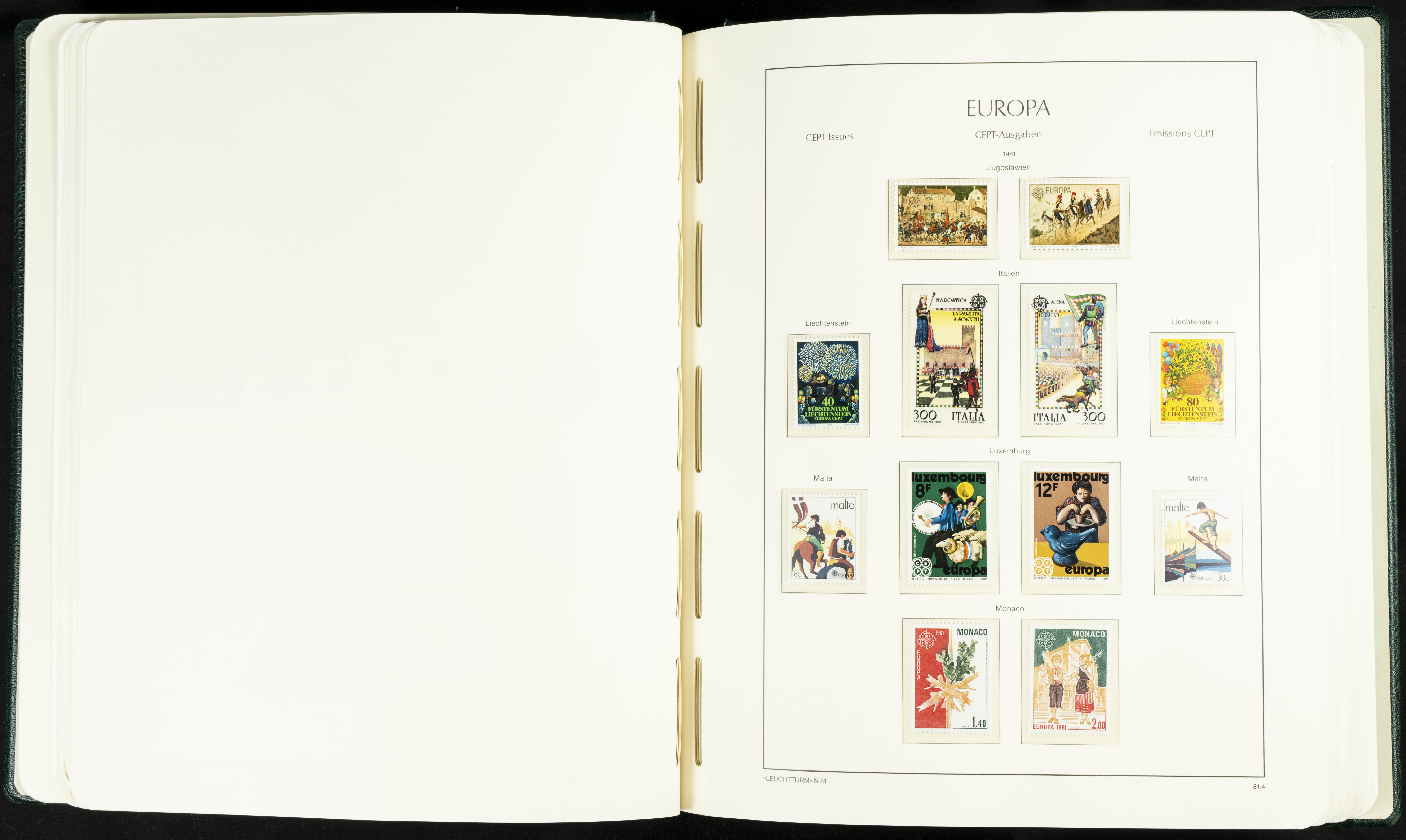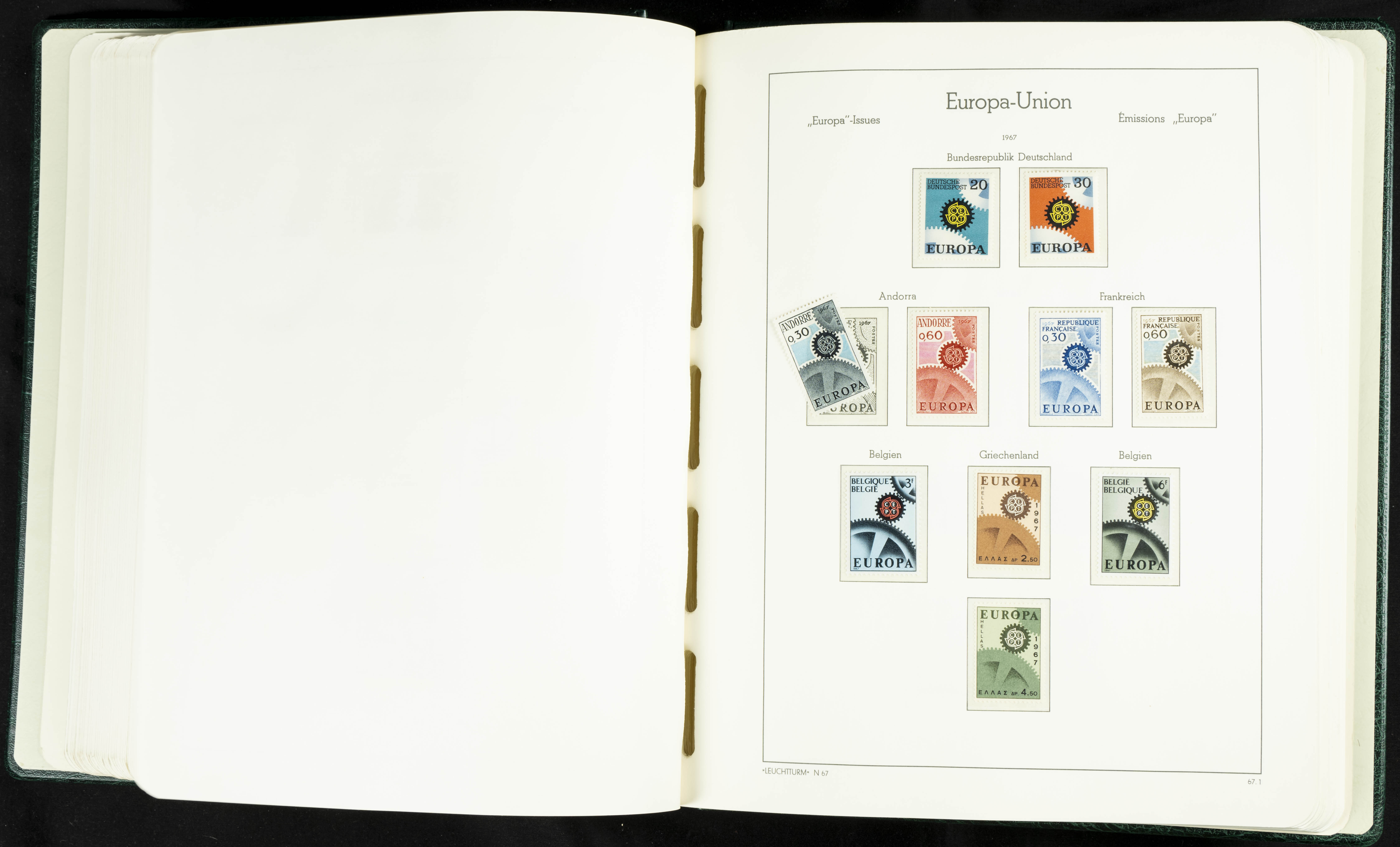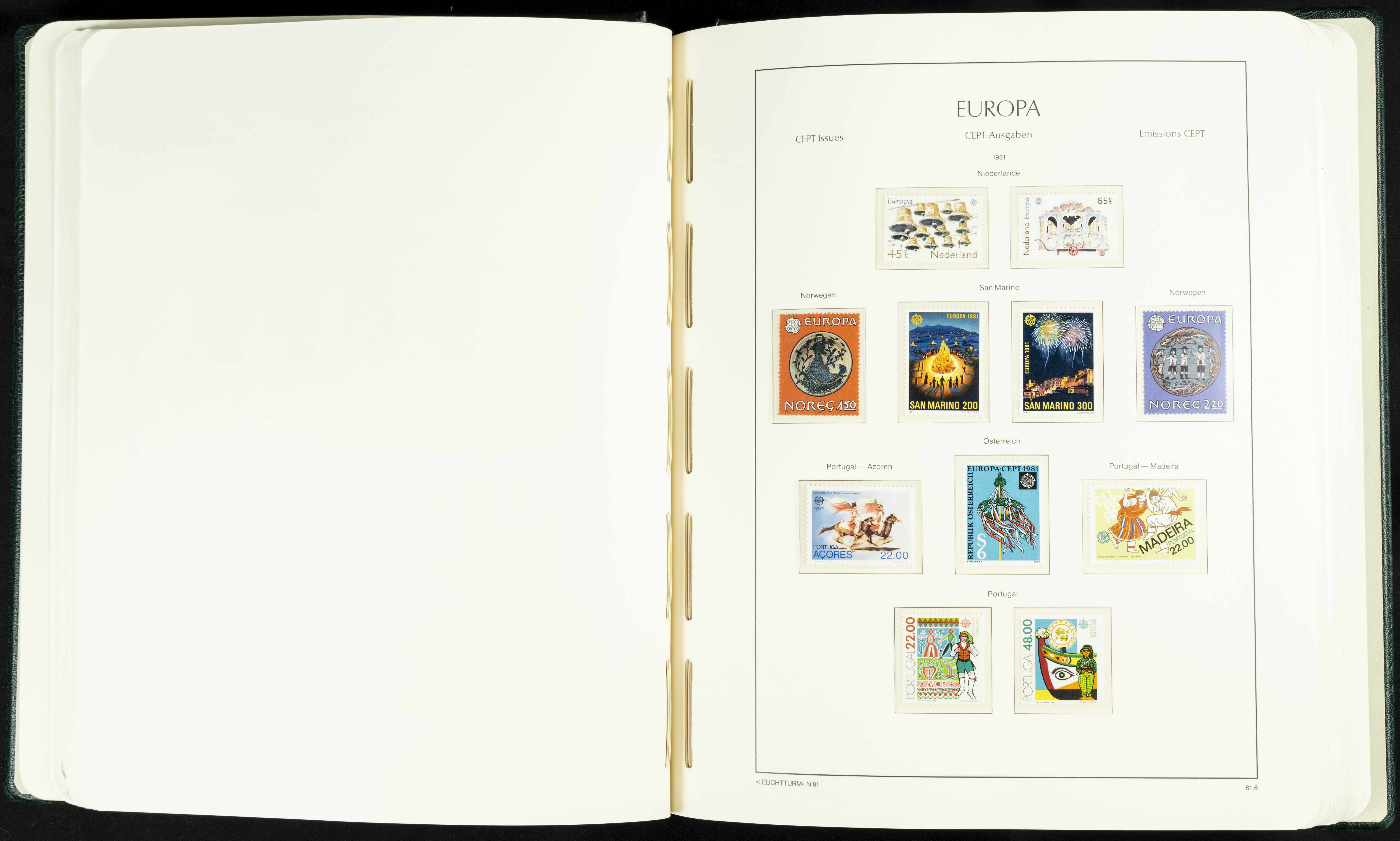 ★★/★(1949ca). Interesante y prácticamente completa colección del Tema Europa y Europeístico (excepto dos series de Italia y Trieste) entre 1949 y 1998, en nuevo sin fijasellos (montada en álbumes Faro). ALTISIMO VALOR DE CATALOGO. A EXAMINAR.