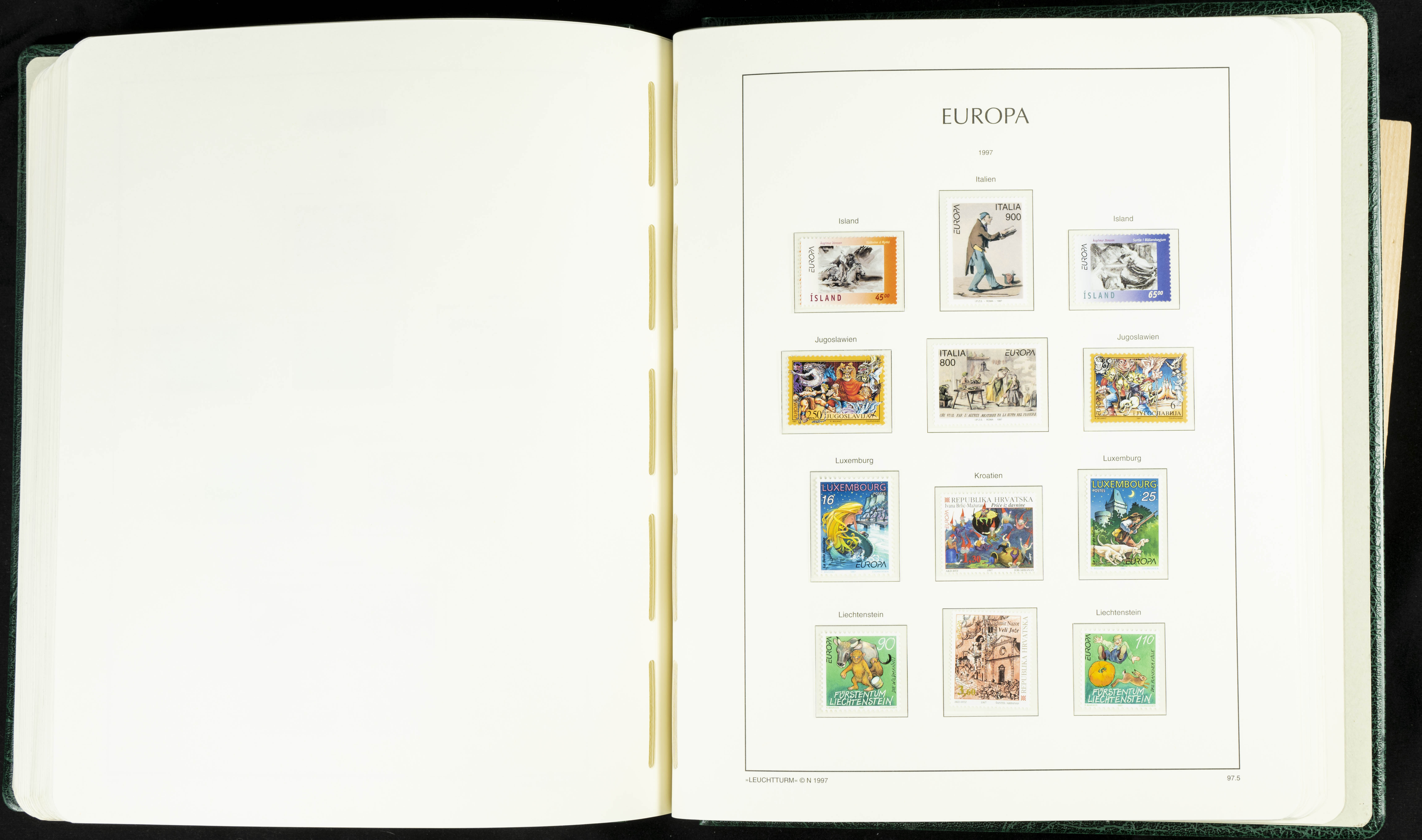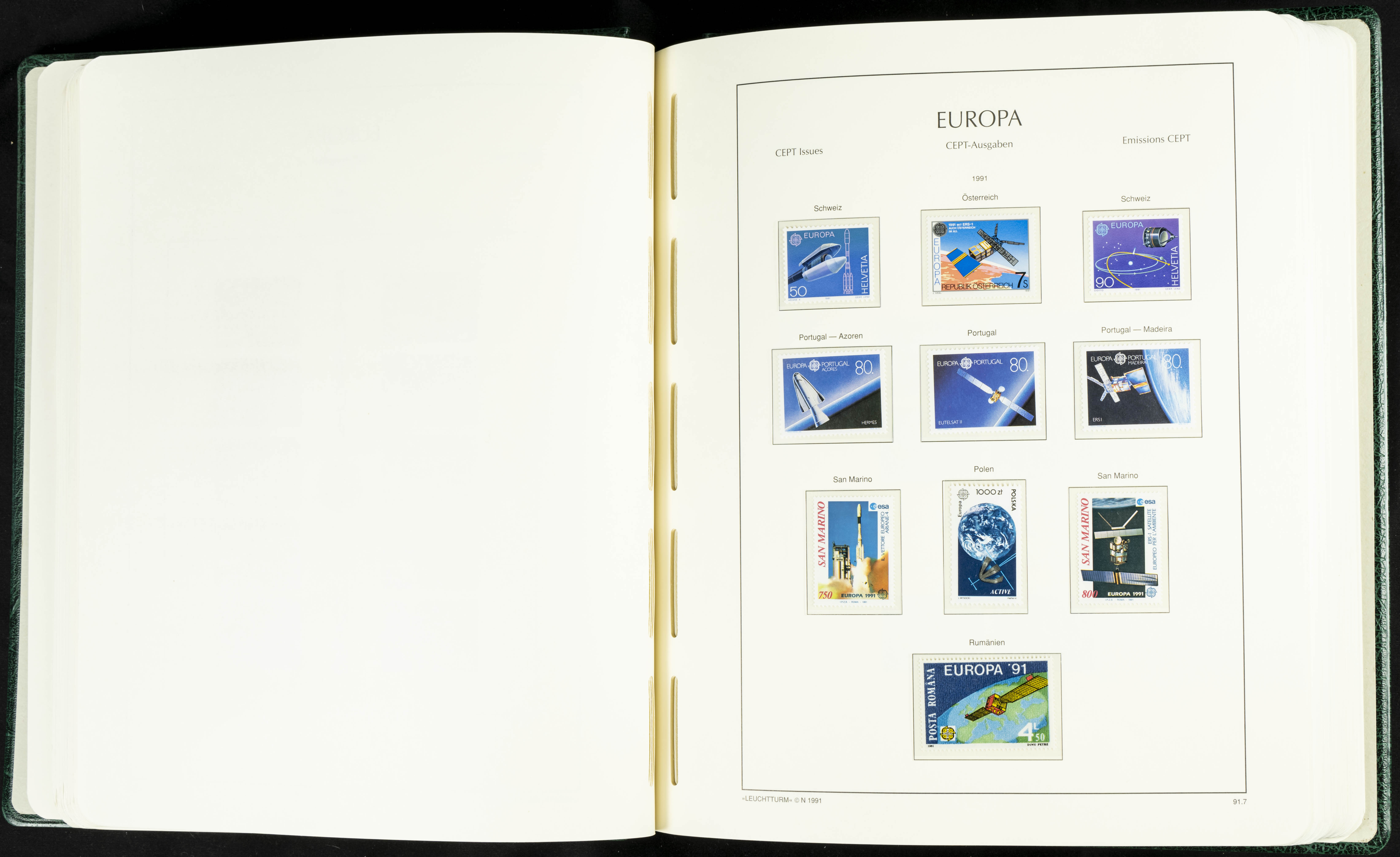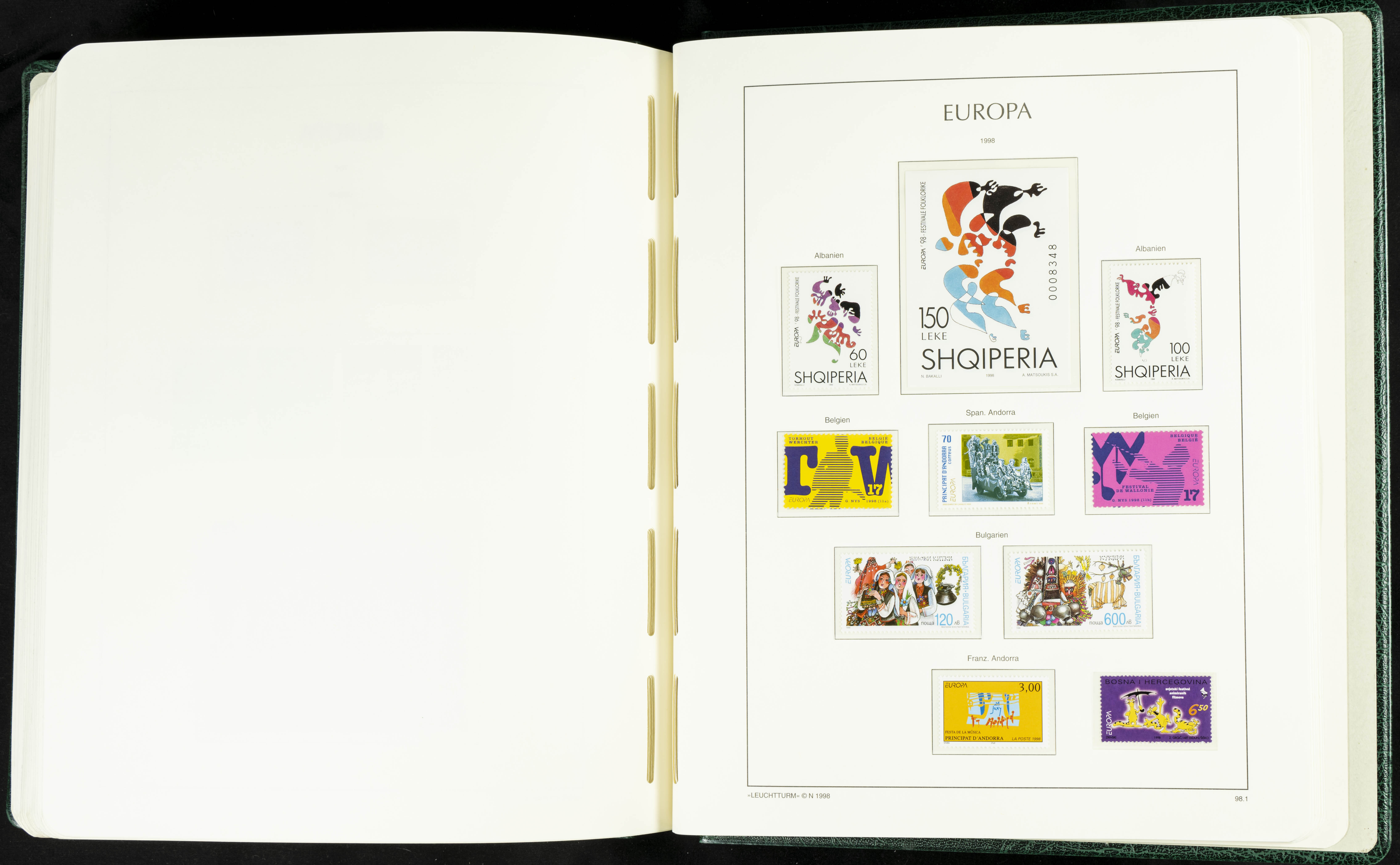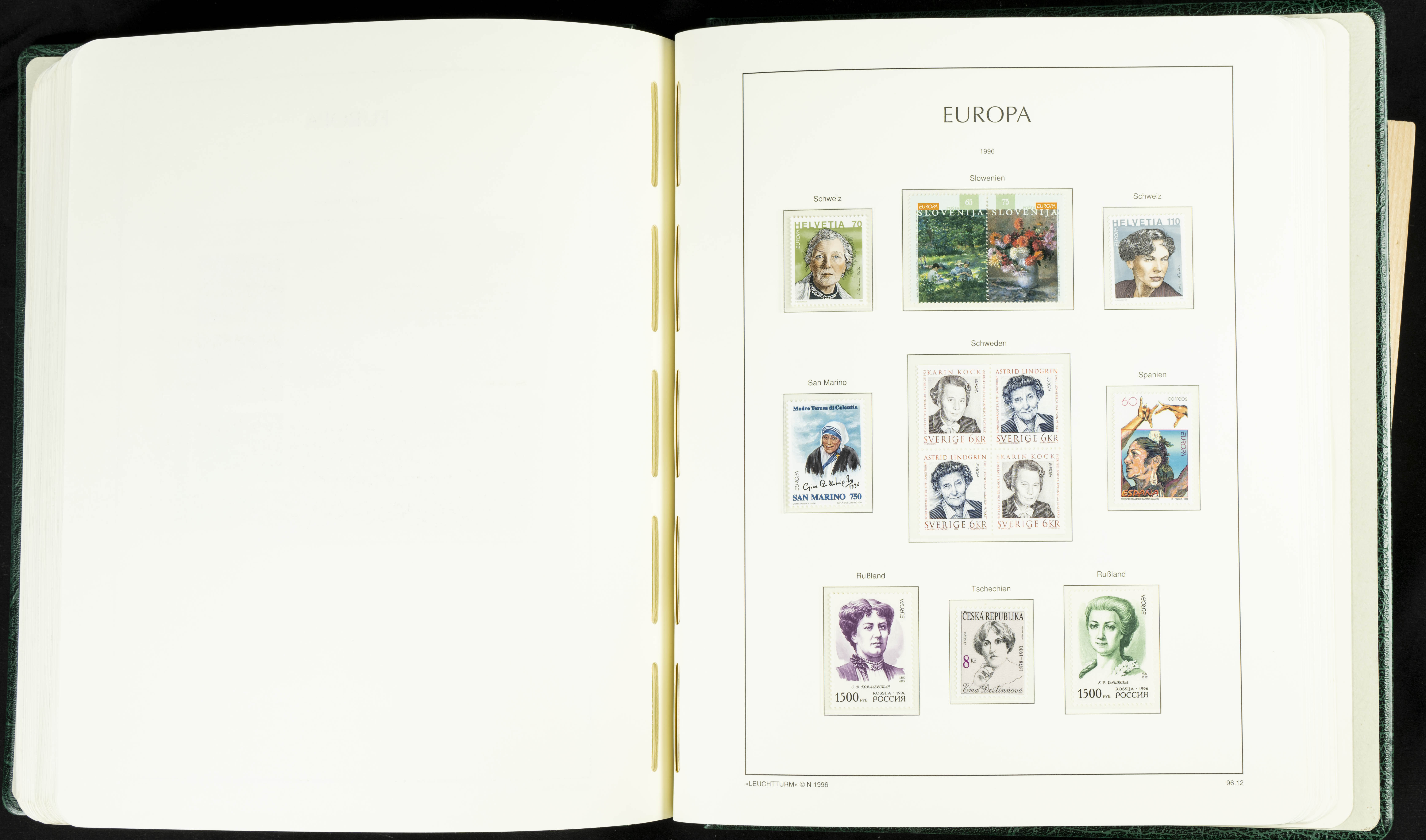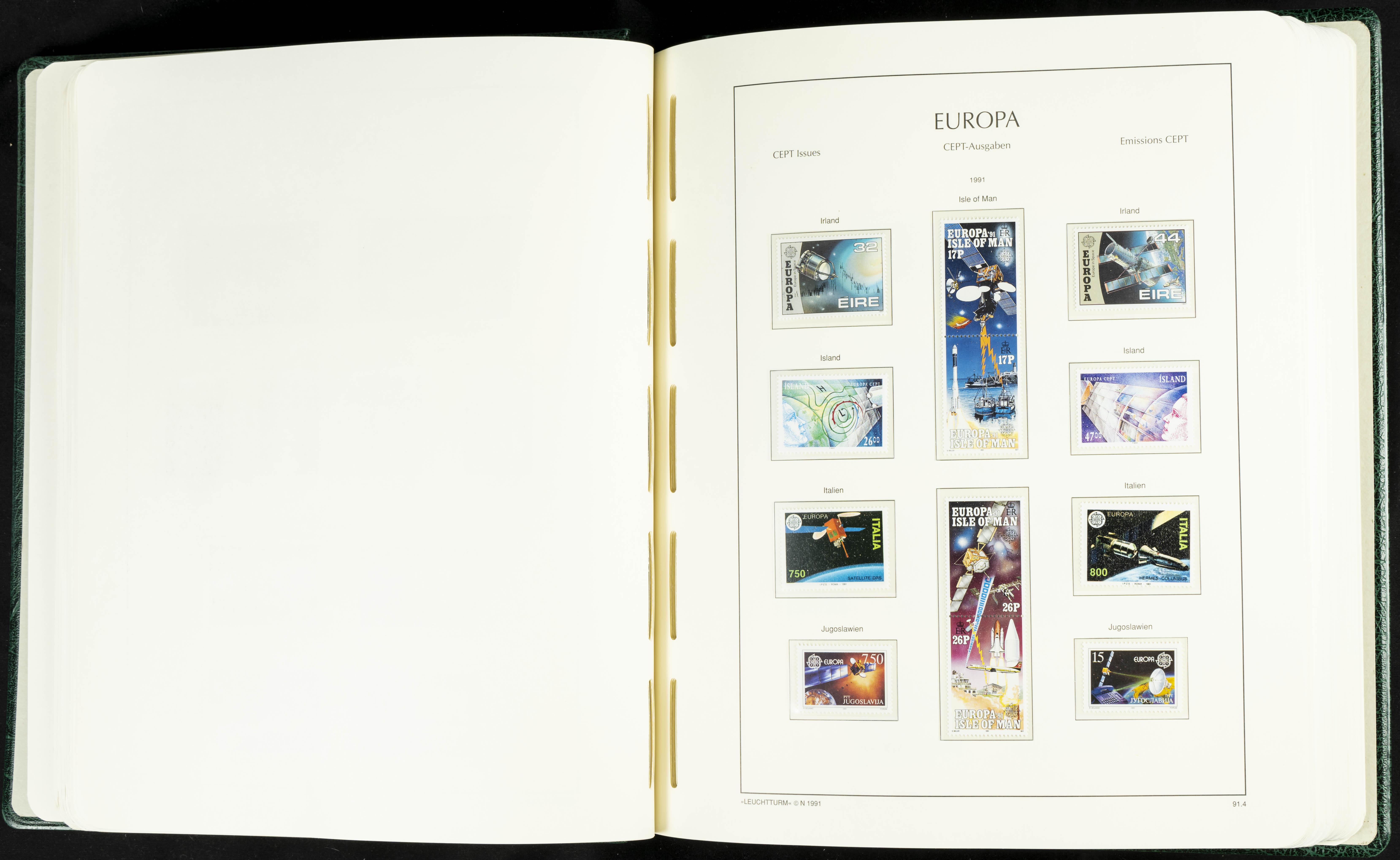 ★★/★(1949ca). Interesante y prácticamente completa colección del Tema Europa y Europeístico (excepto dos series de Italia y Trieste) entre 1949 y 1998, en nuevo sin fijasellos (montada en álbumes Faro). ALTISIMO VALOR DE CATALOGO. A EXAMINAR.