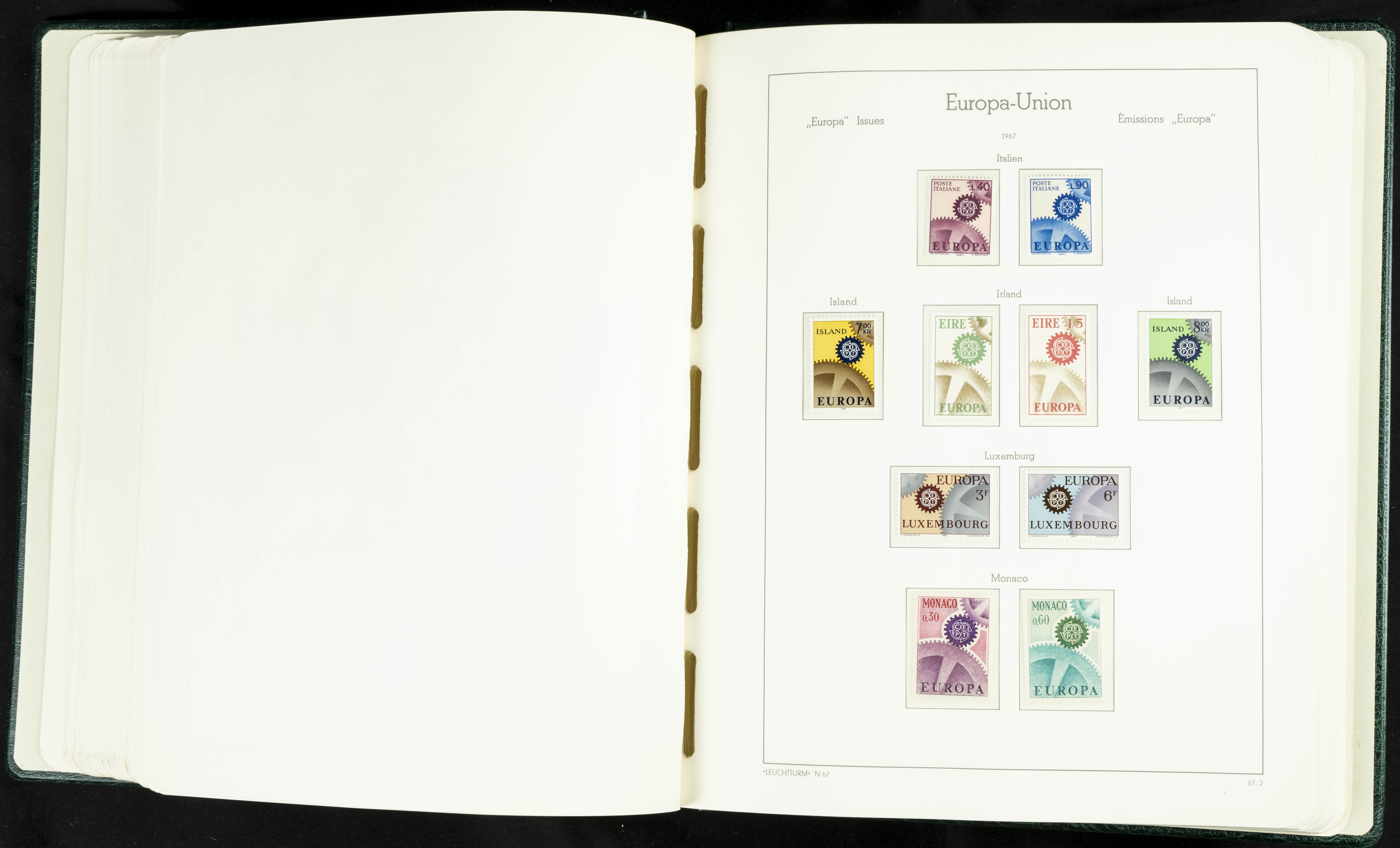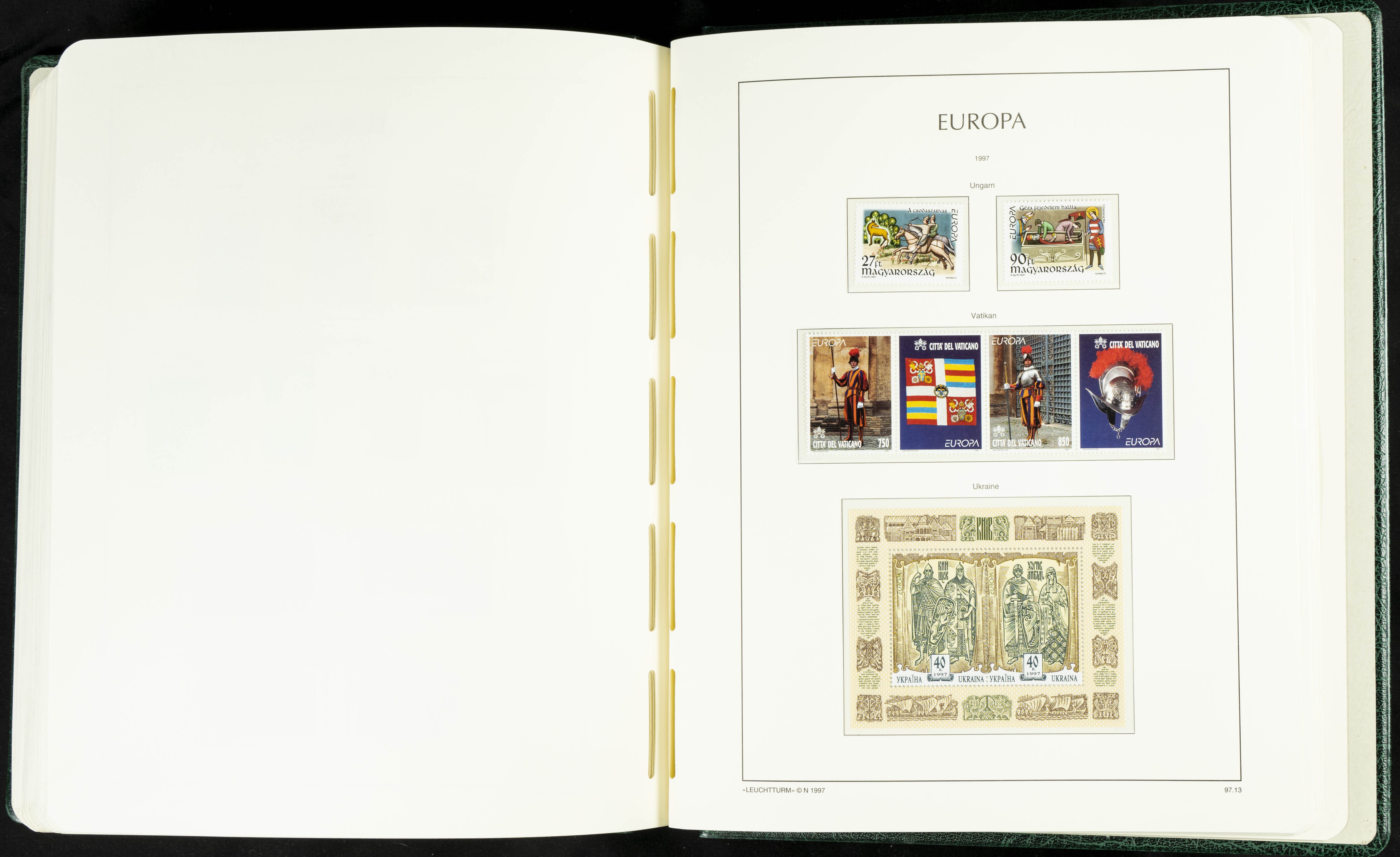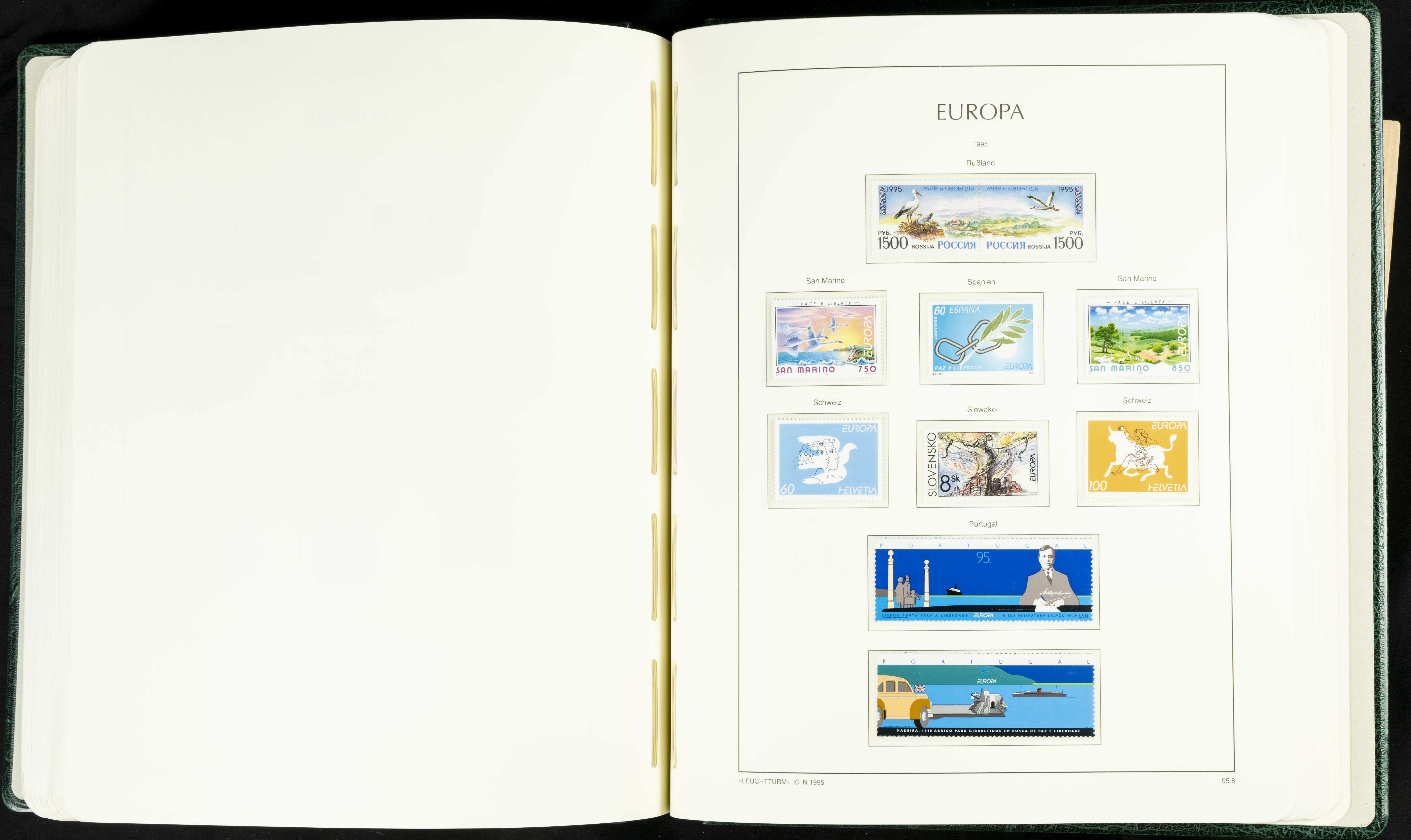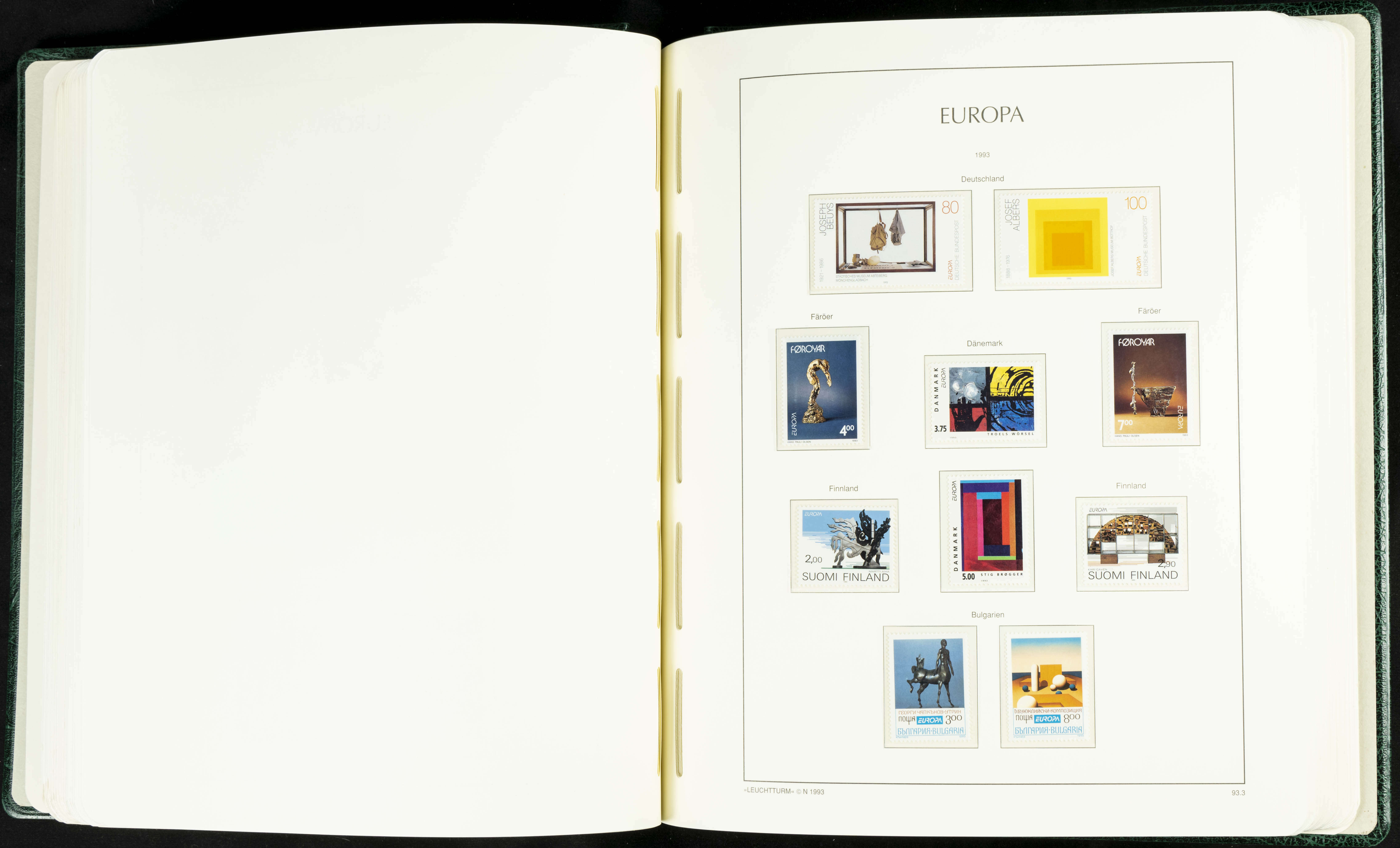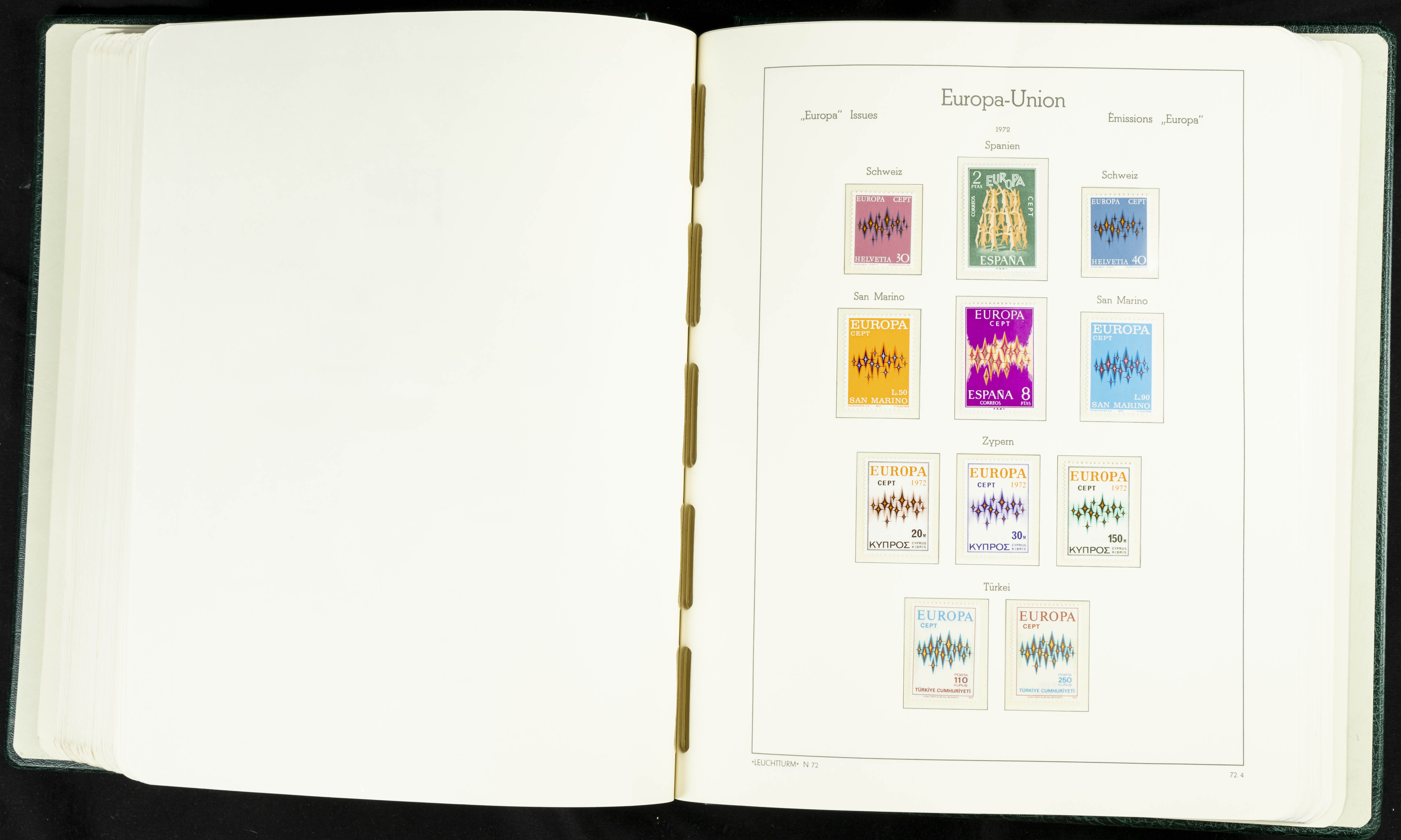 ★★/★(1949ca). Interesante y prácticamente completa colección del Tema Europa y Europeístico (excepto dos series de Italia y Trieste) entre 1949 y 1998, en nuevo sin fijasellos (montada en álbumes Faro). ALTISIMO VALOR DE CATALOGO. A EXAMINAR.
