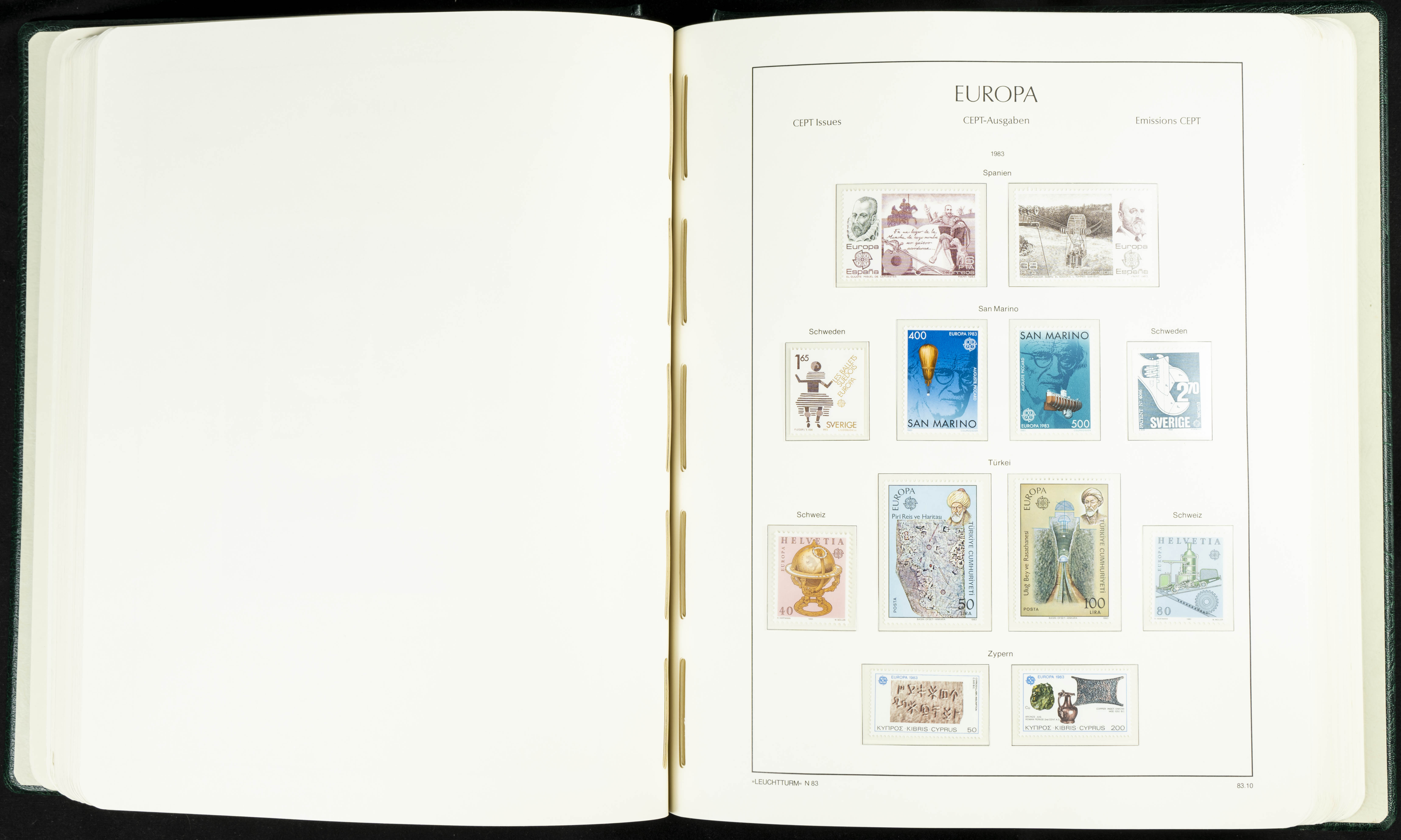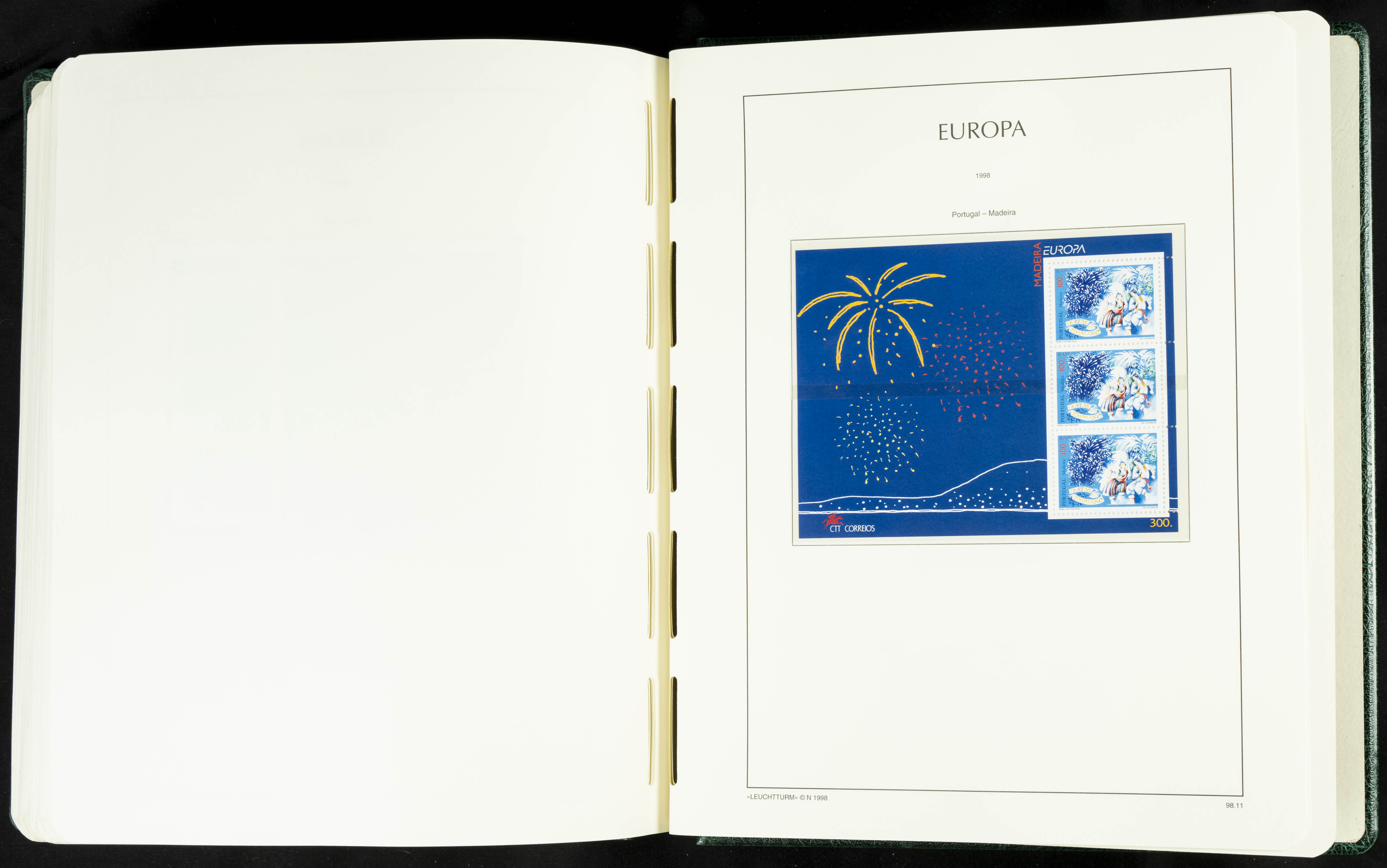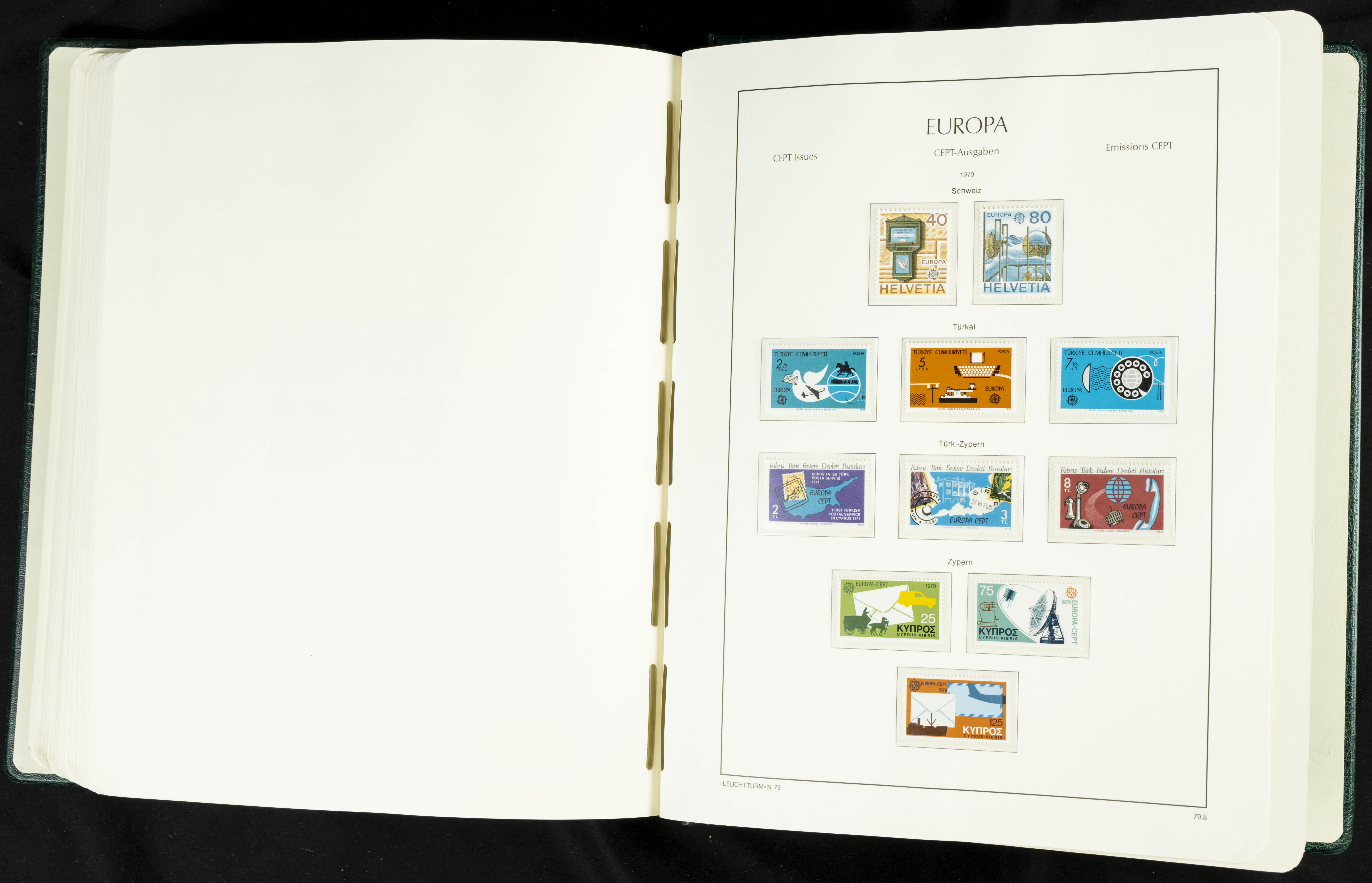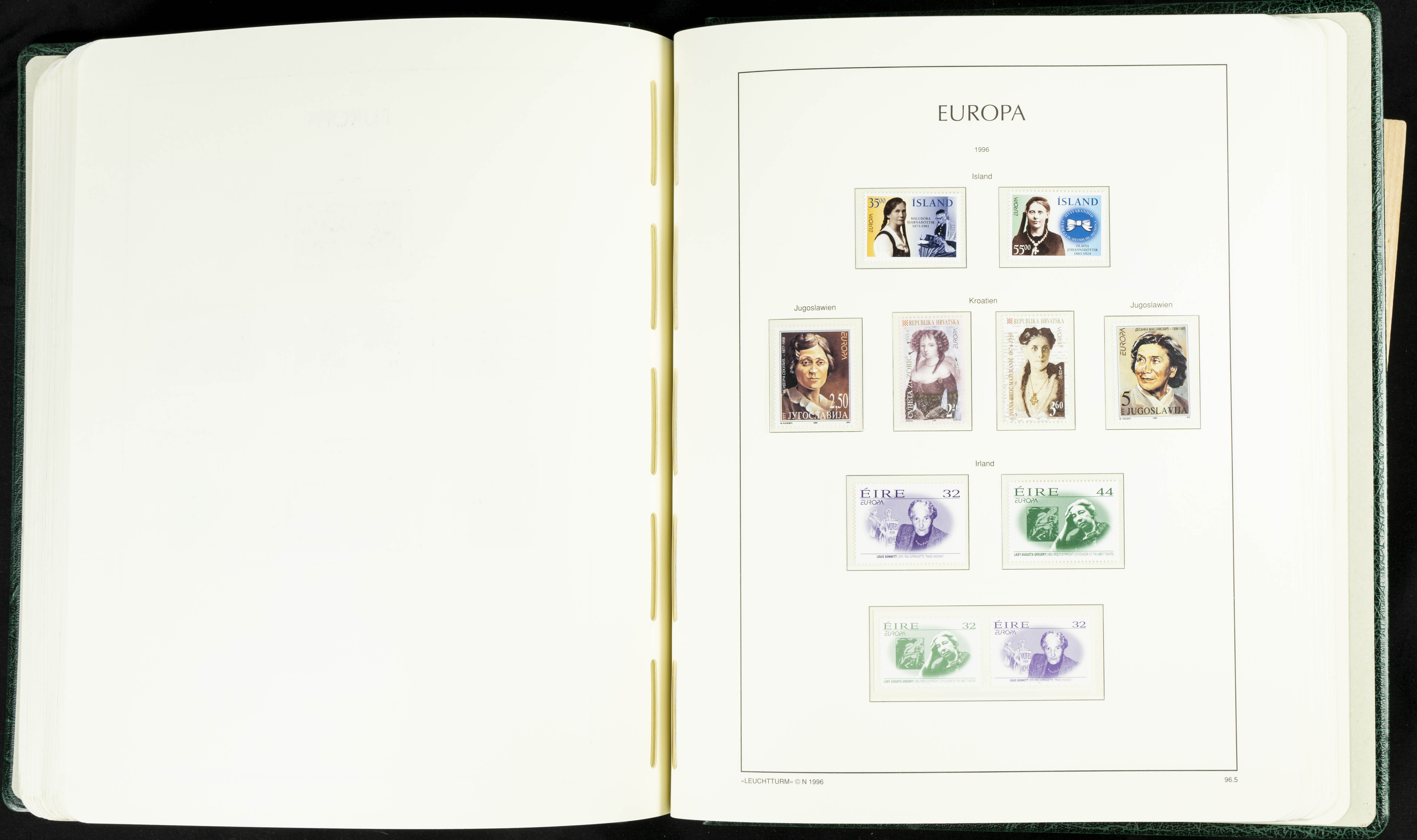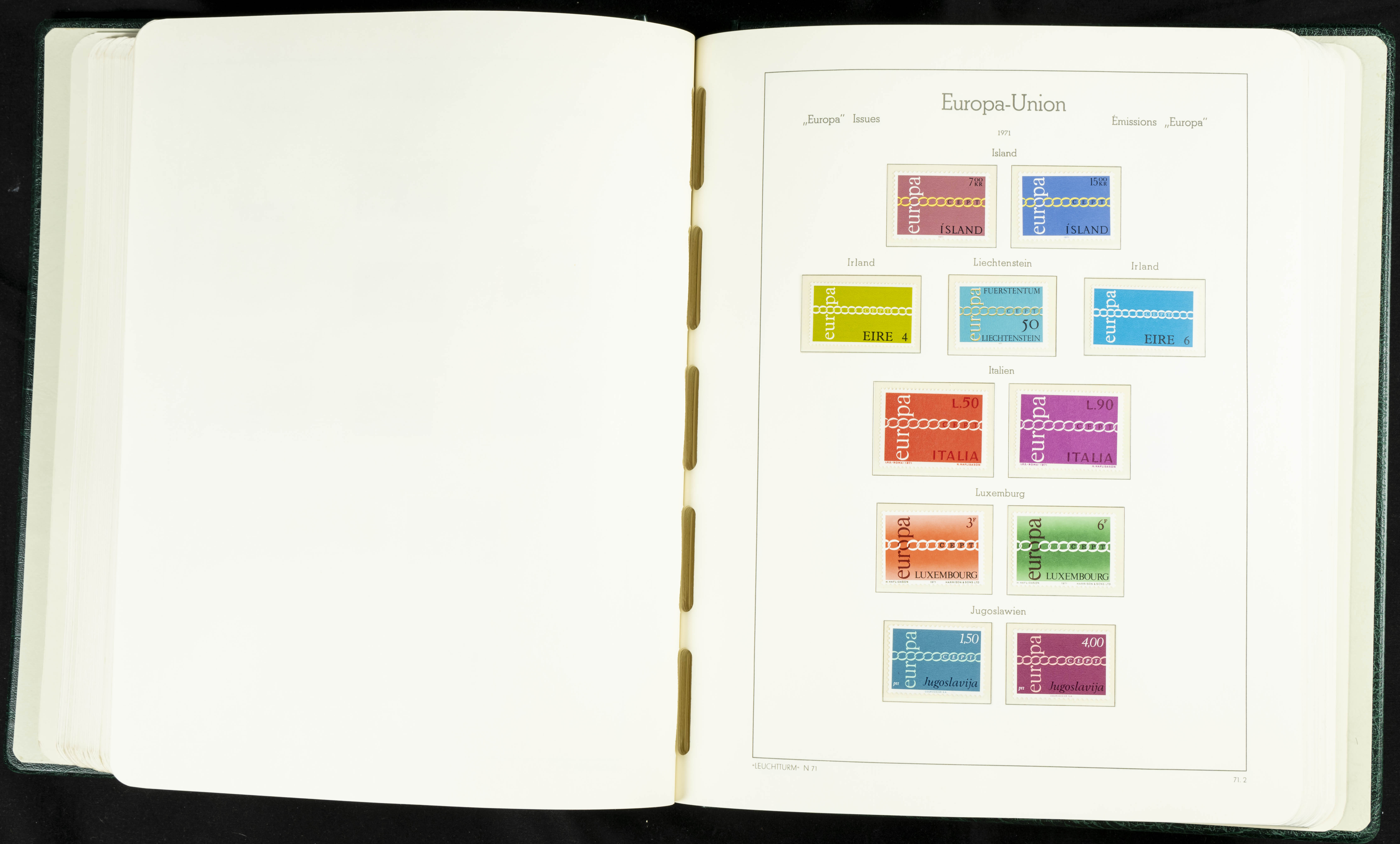 ★★/★(1949ca). Interesante y prácticamente completa colección del Tema Europa y Europeístico (excepto dos series de Italia y Trieste) entre 1949 y 1998, en nuevo sin fijasellos (montada en álbumes Faro). ALTISIMO VALOR DE CATALOGO. A EXAMINAR.