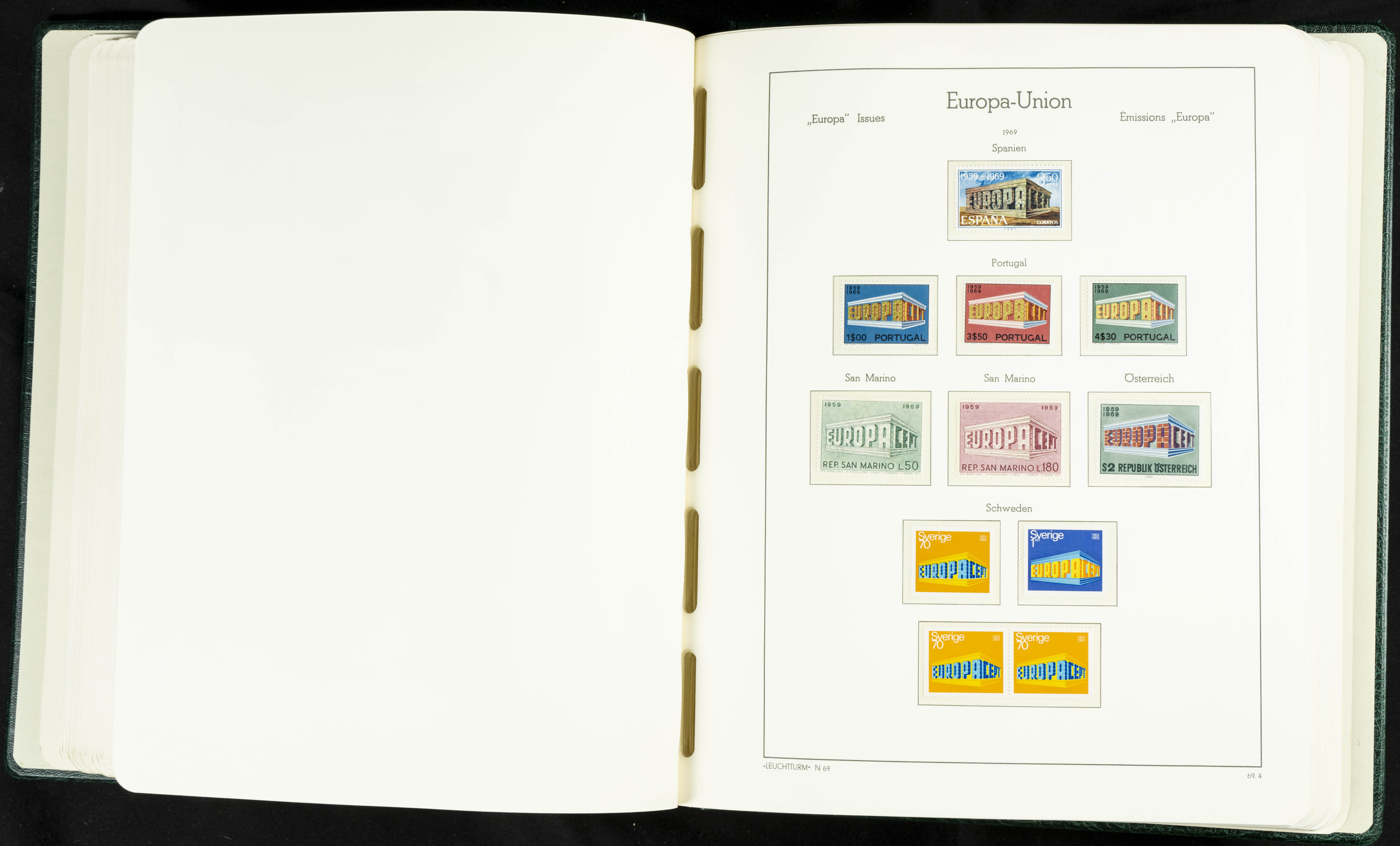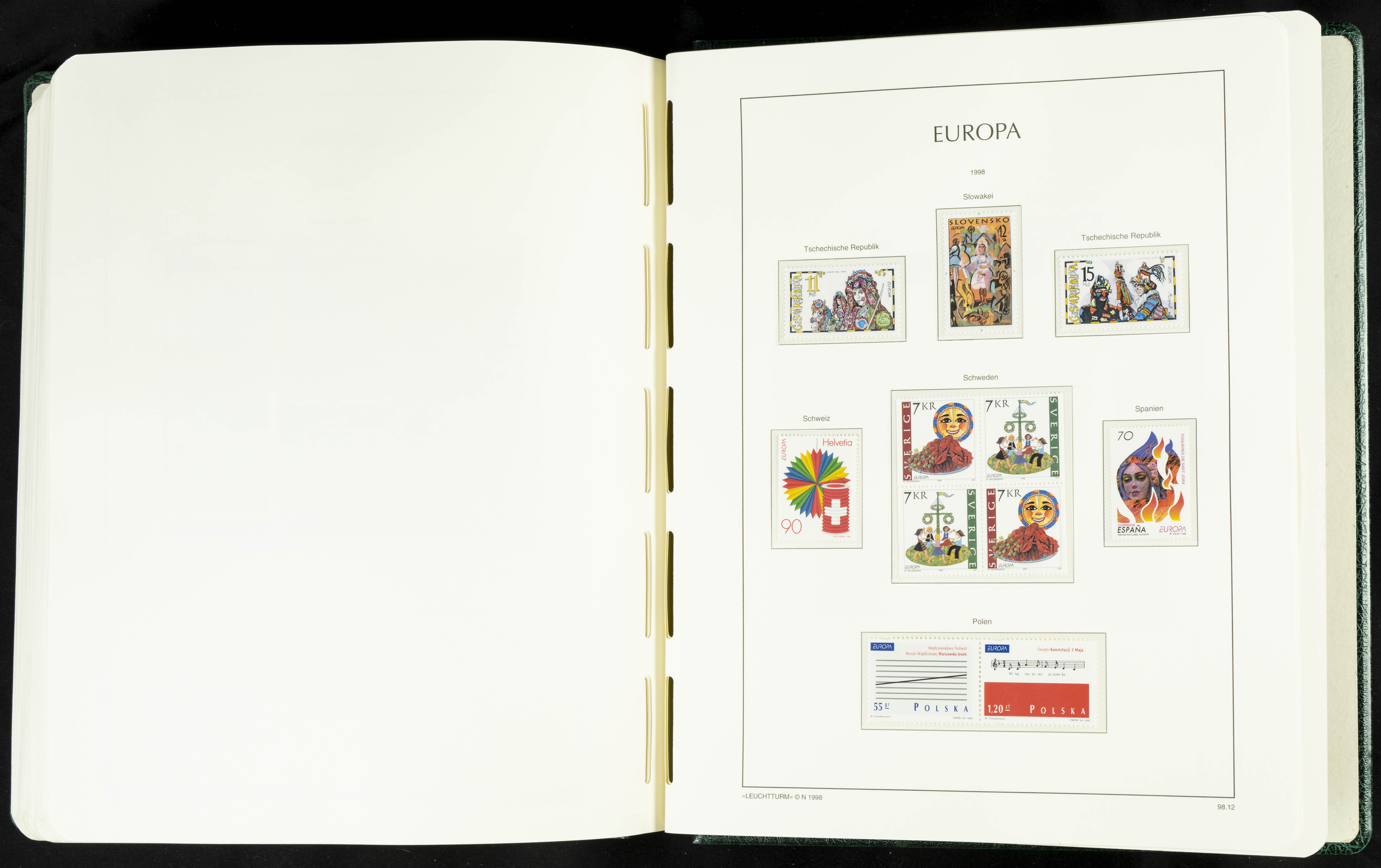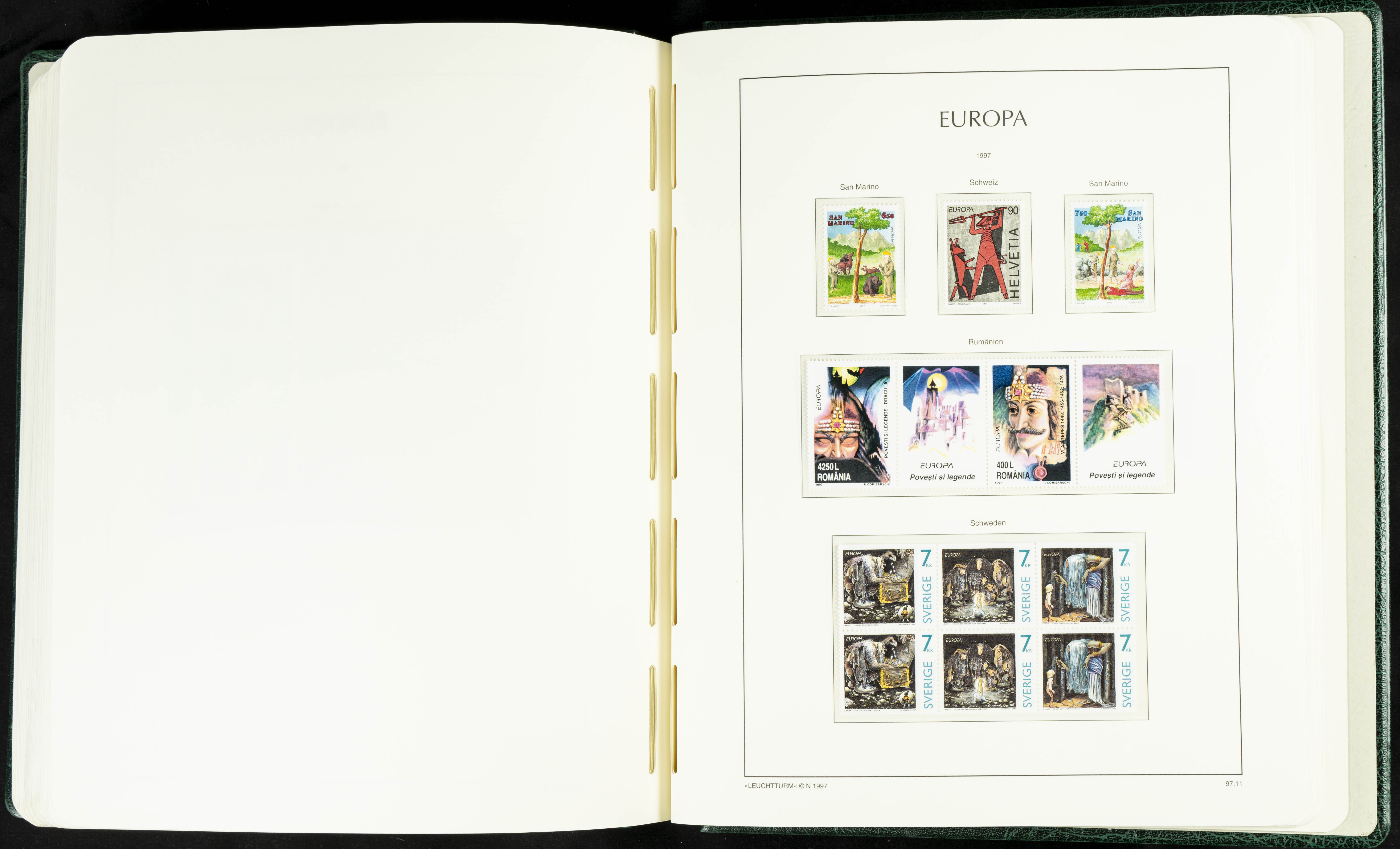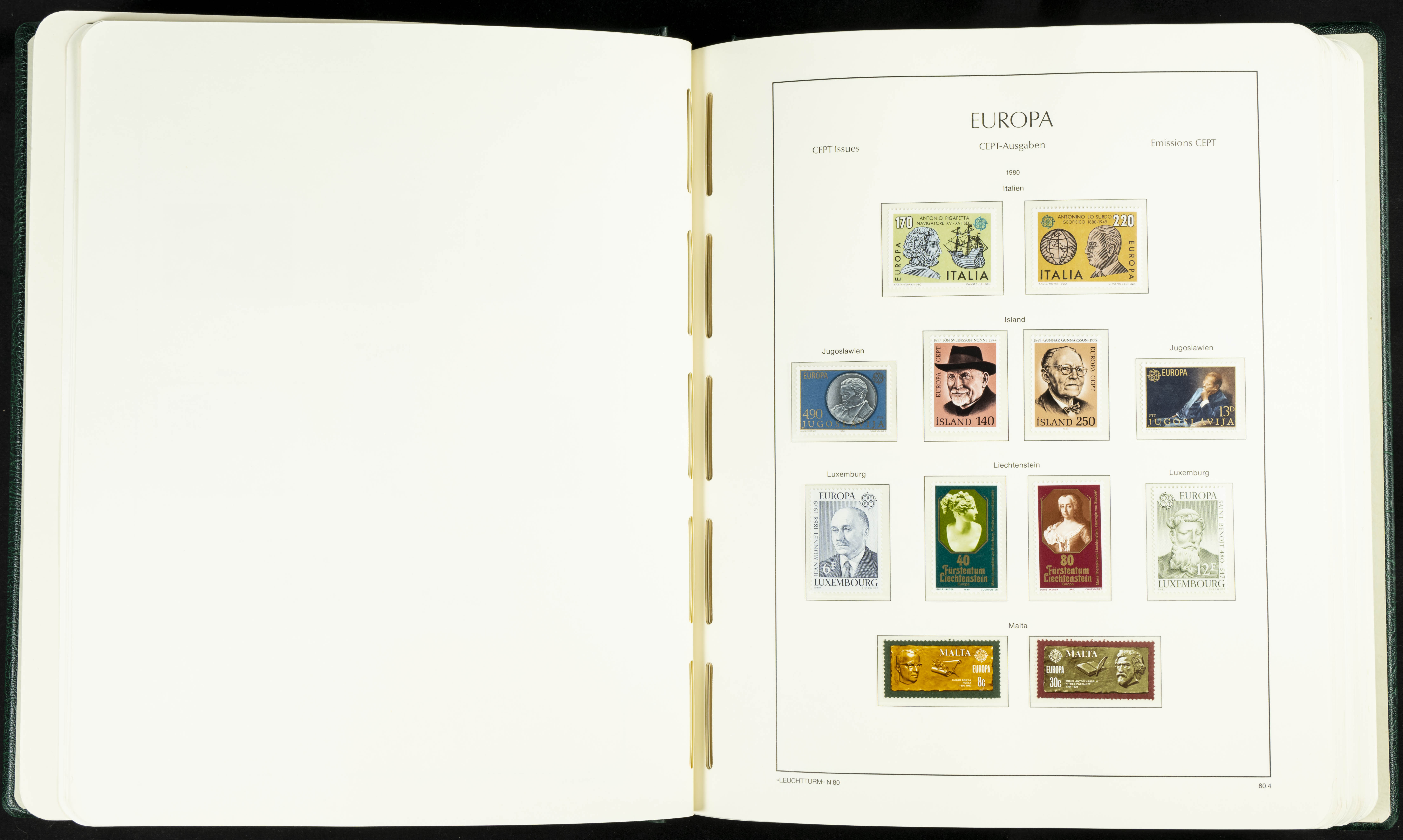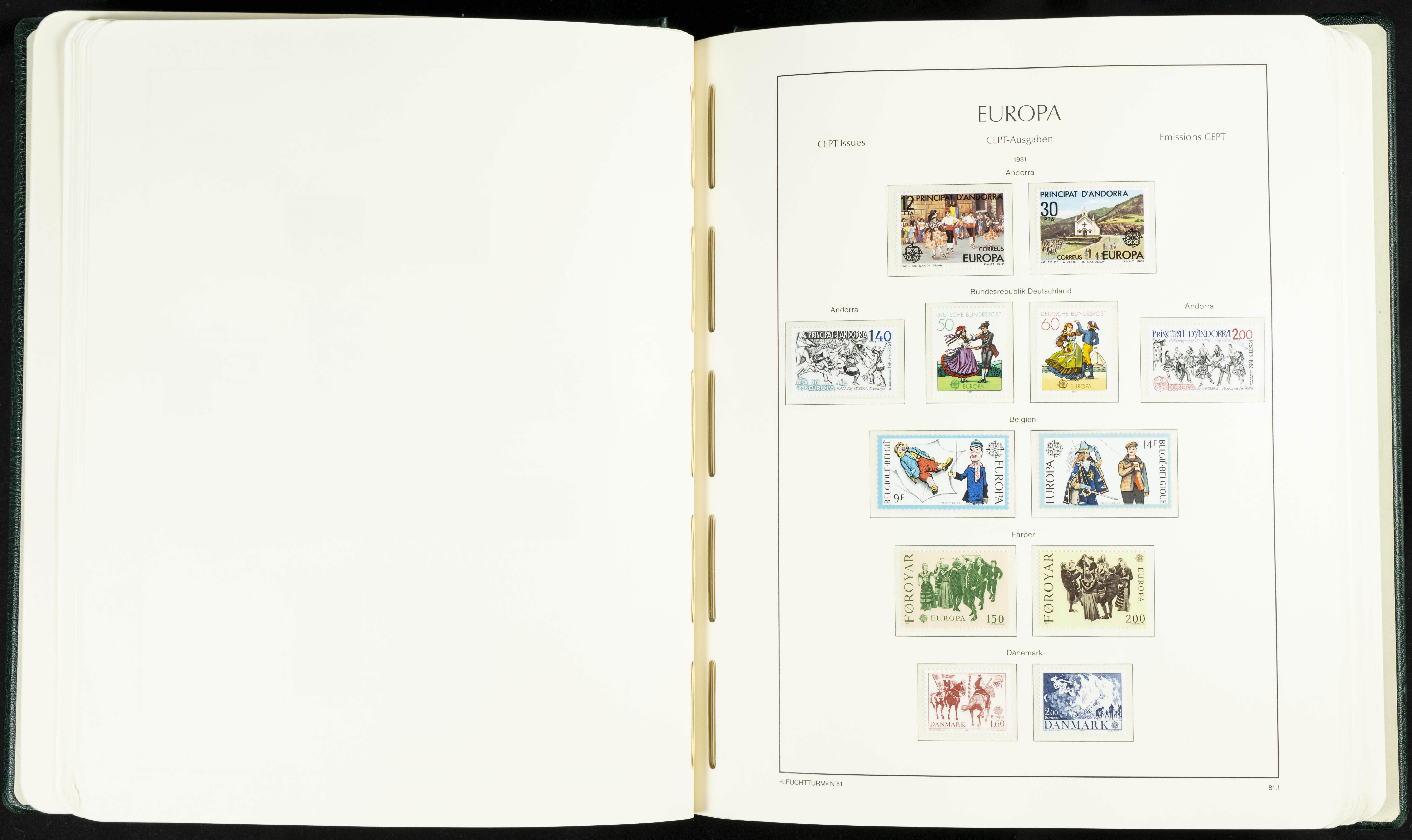 ★★/★(1949ca). Interesante y prácticamente completa colección del Tema Europa y Europeístico (excepto dos series de Italia y Trieste) entre 1949 y 1998, en nuevo sin fijasellos (montada en álbumes Faro). ALTISIMO VALOR DE CATALOGO. A EXAMINAR.