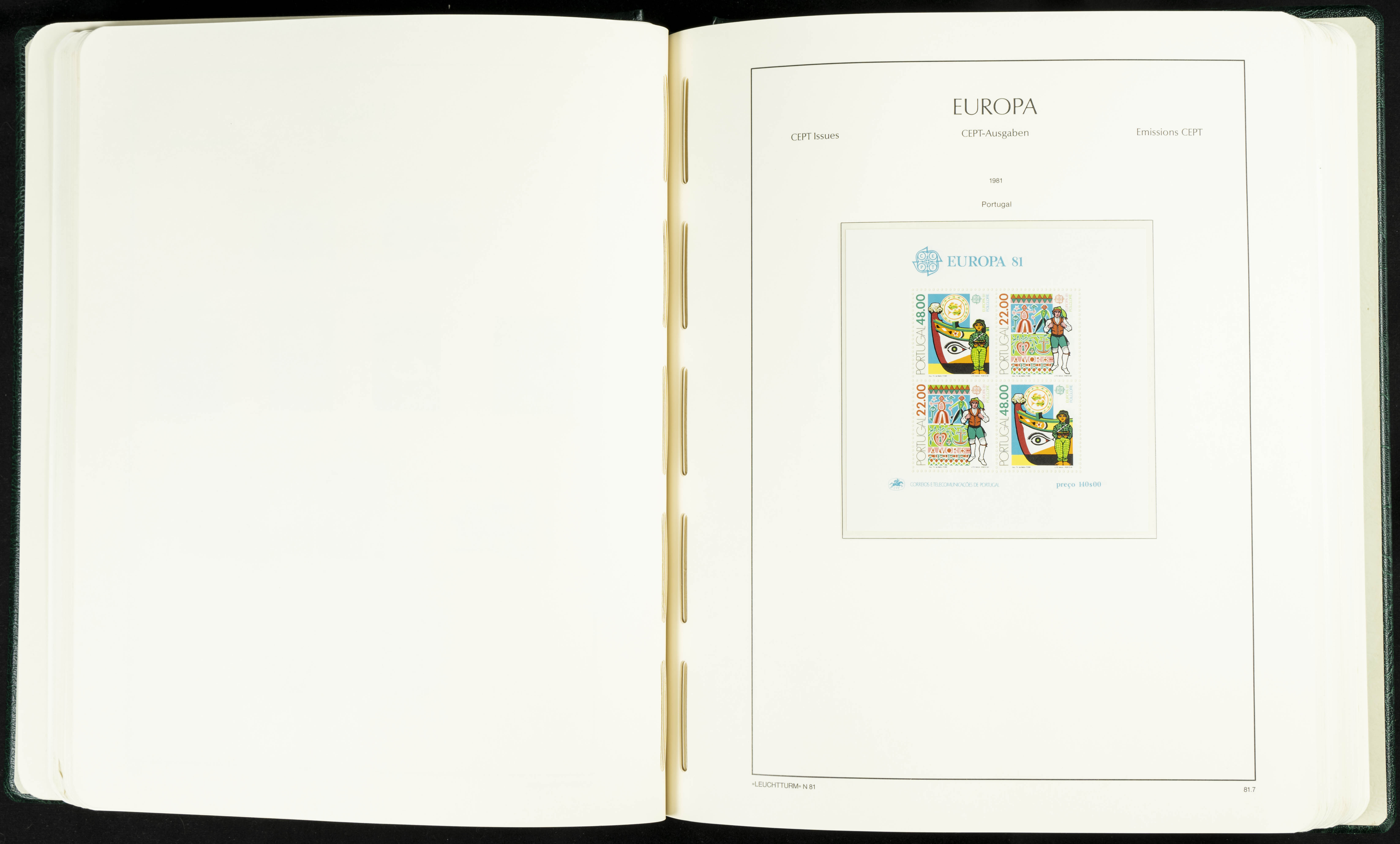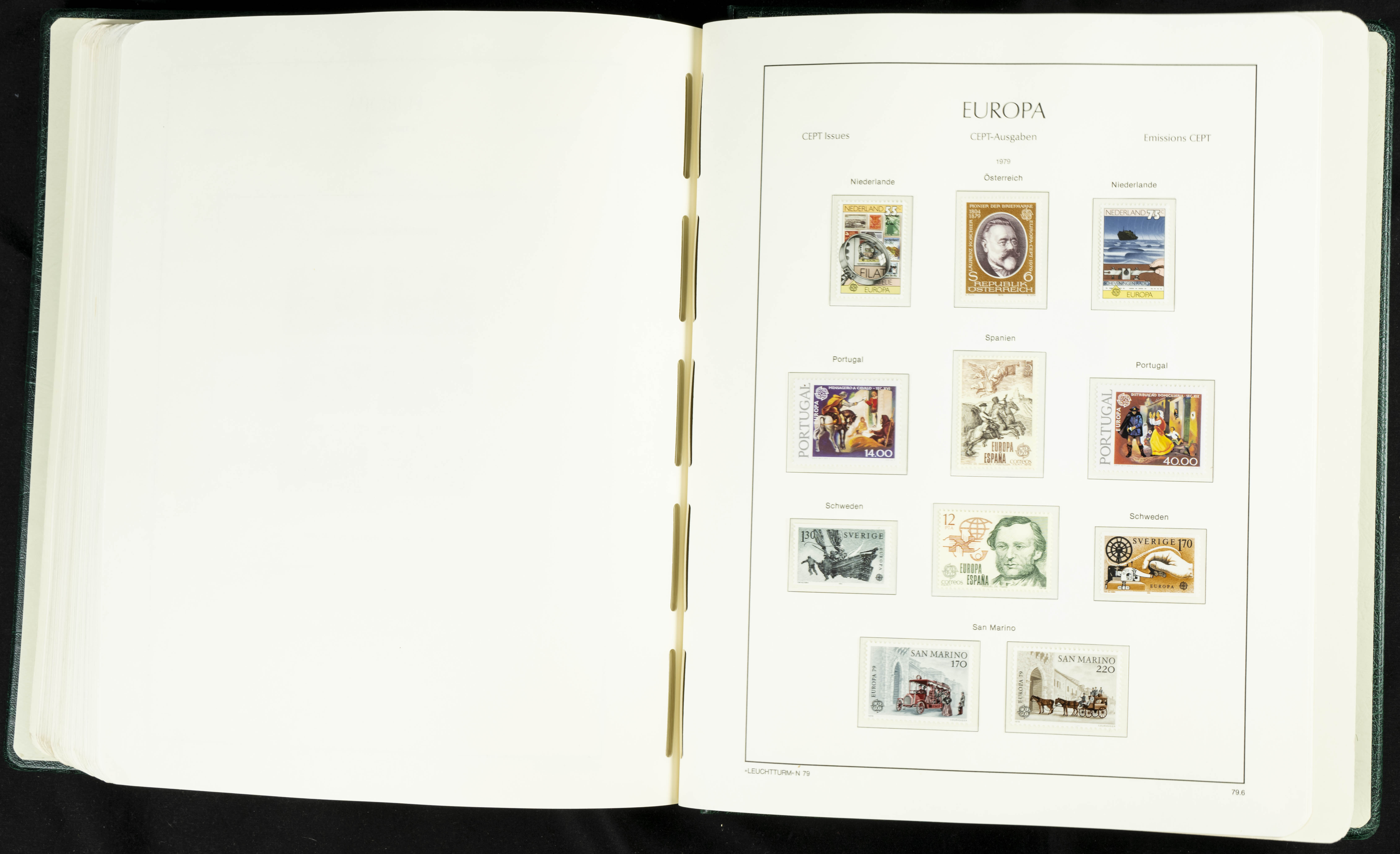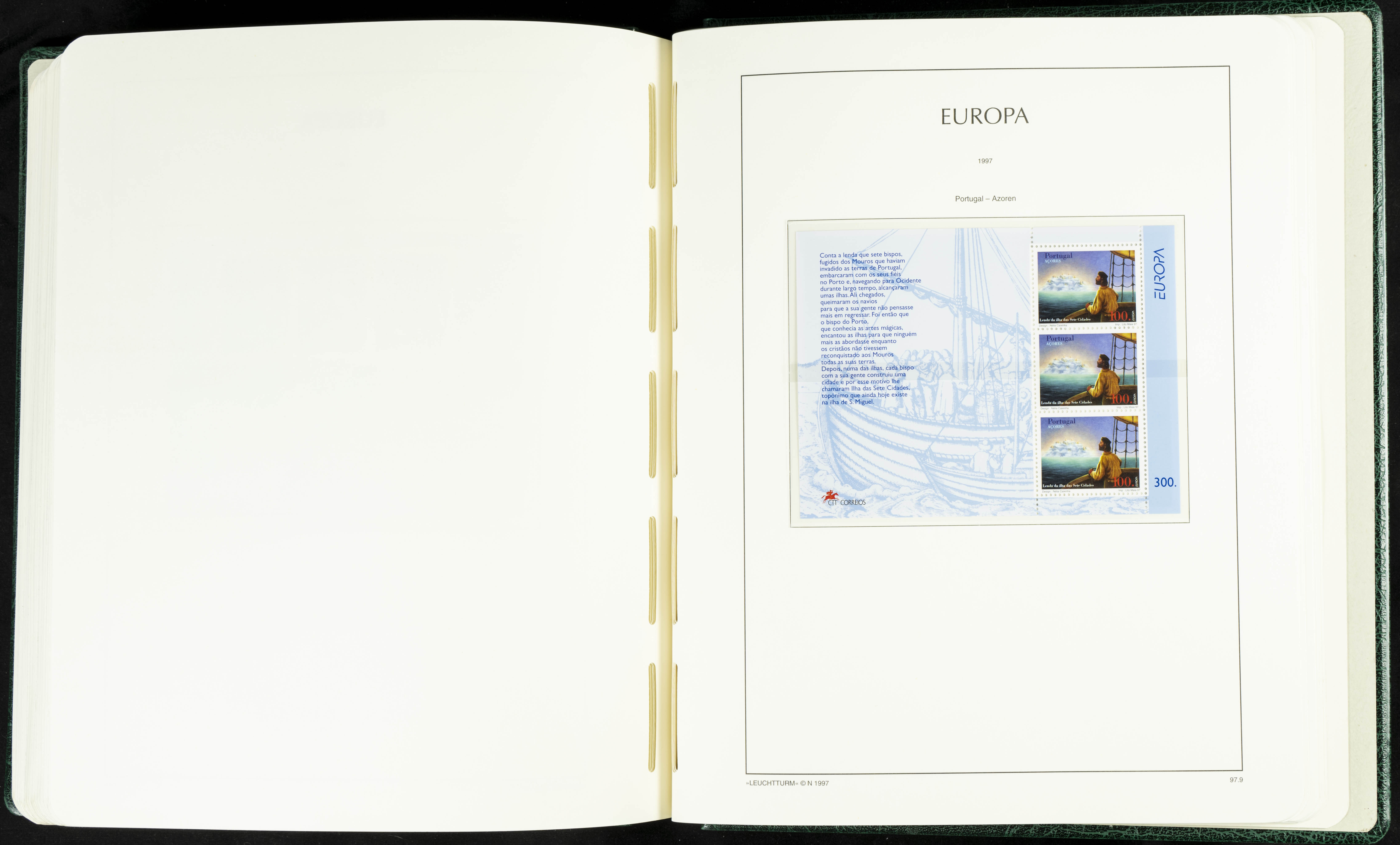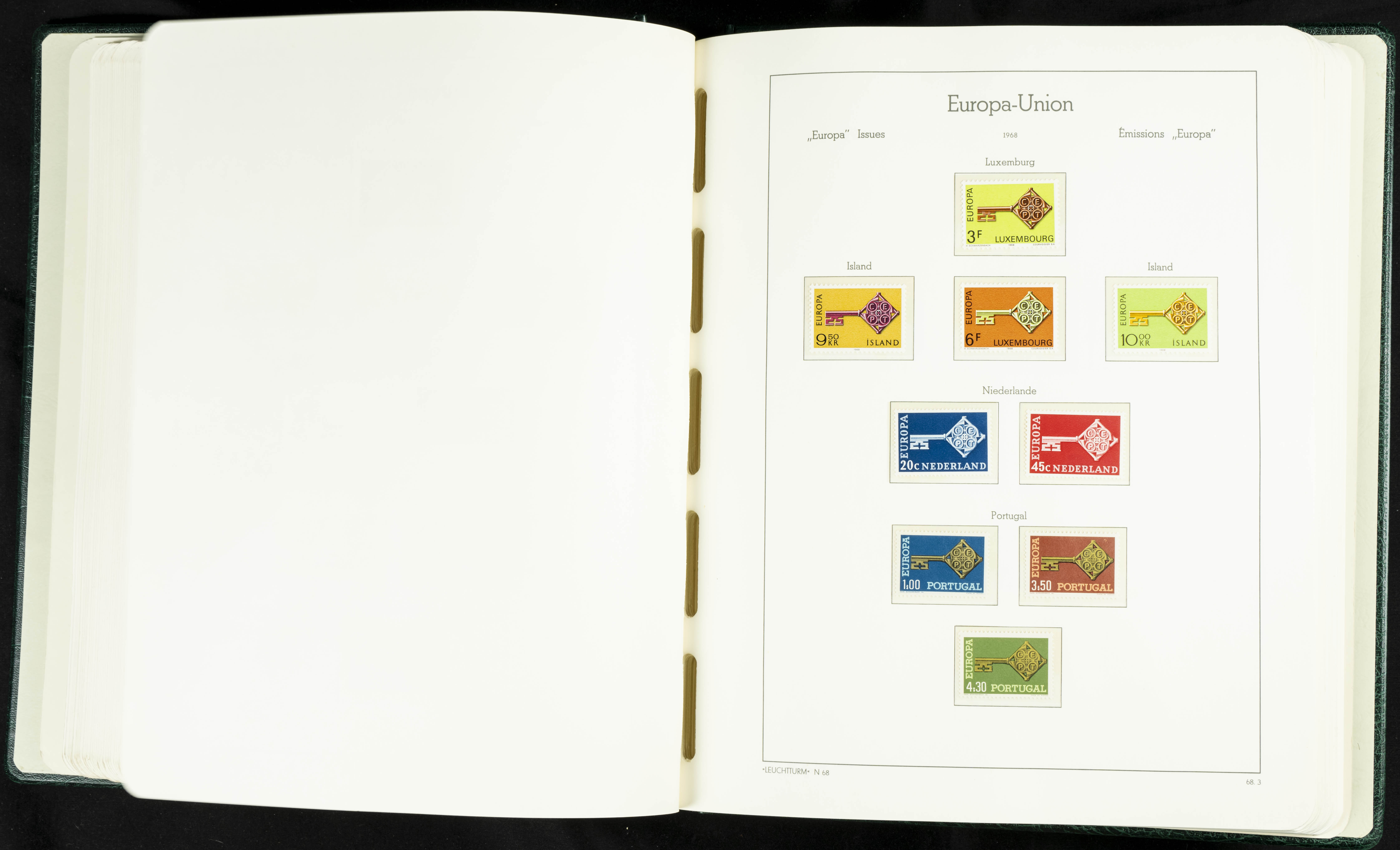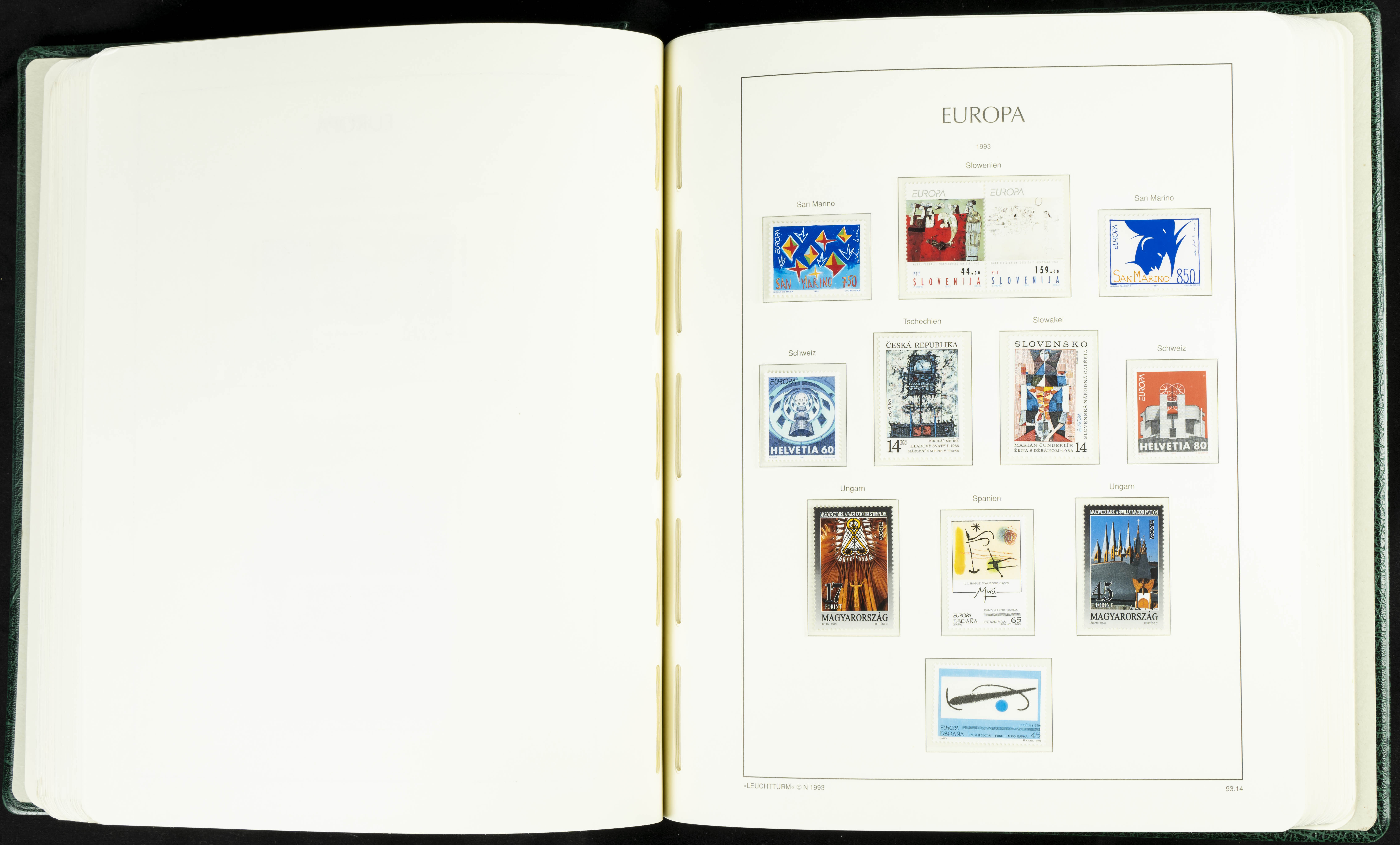 ★★/★(1949ca). Interesante y prácticamente completa colección del Tema Europa y Europeístico (excepto dos series de Italia y Trieste) entre 1949 y 1998, en nuevo sin fijasellos (montada en álbumes Faro). ALTISIMO VALOR DE CATALOGO. A EXAMINAR.