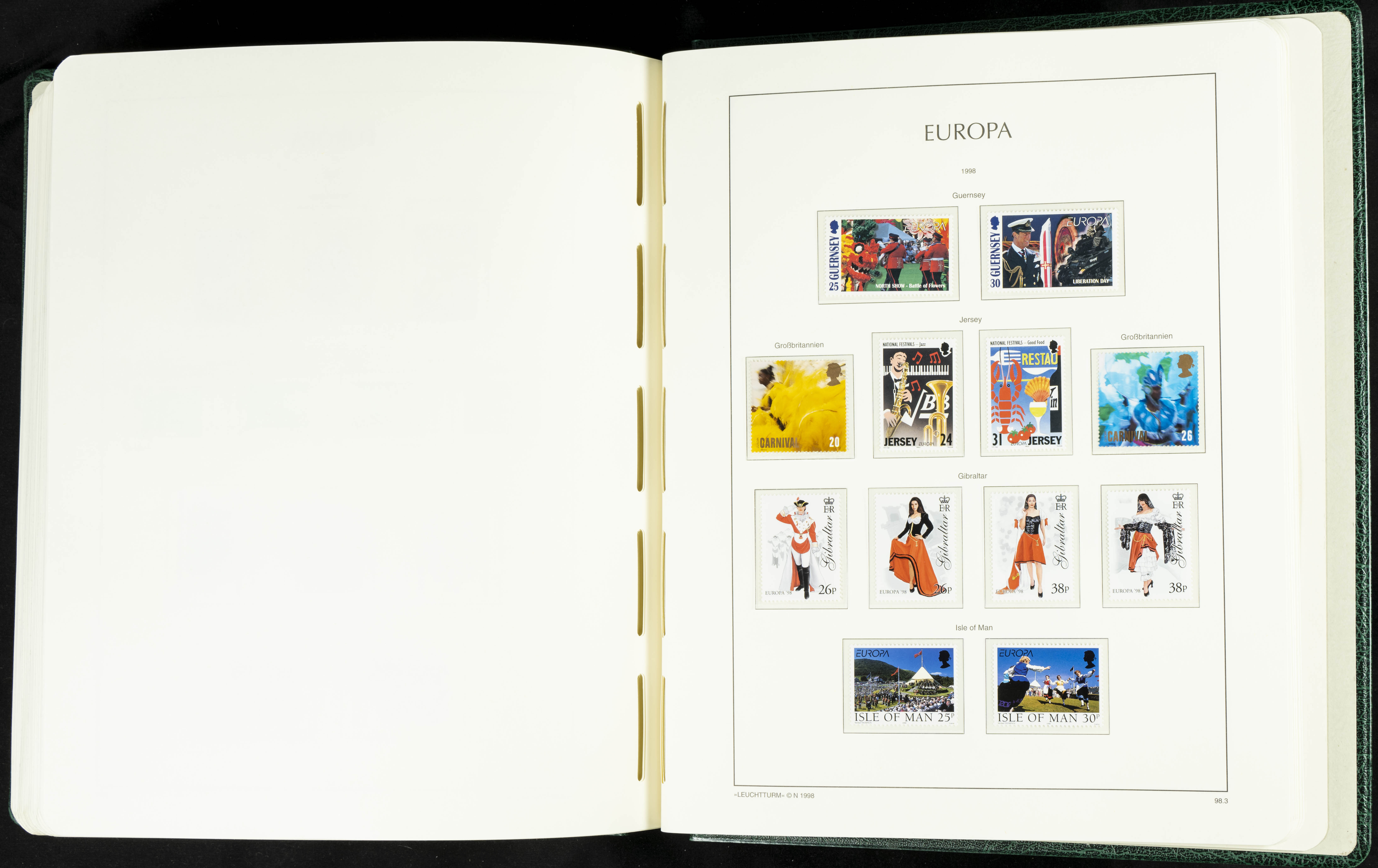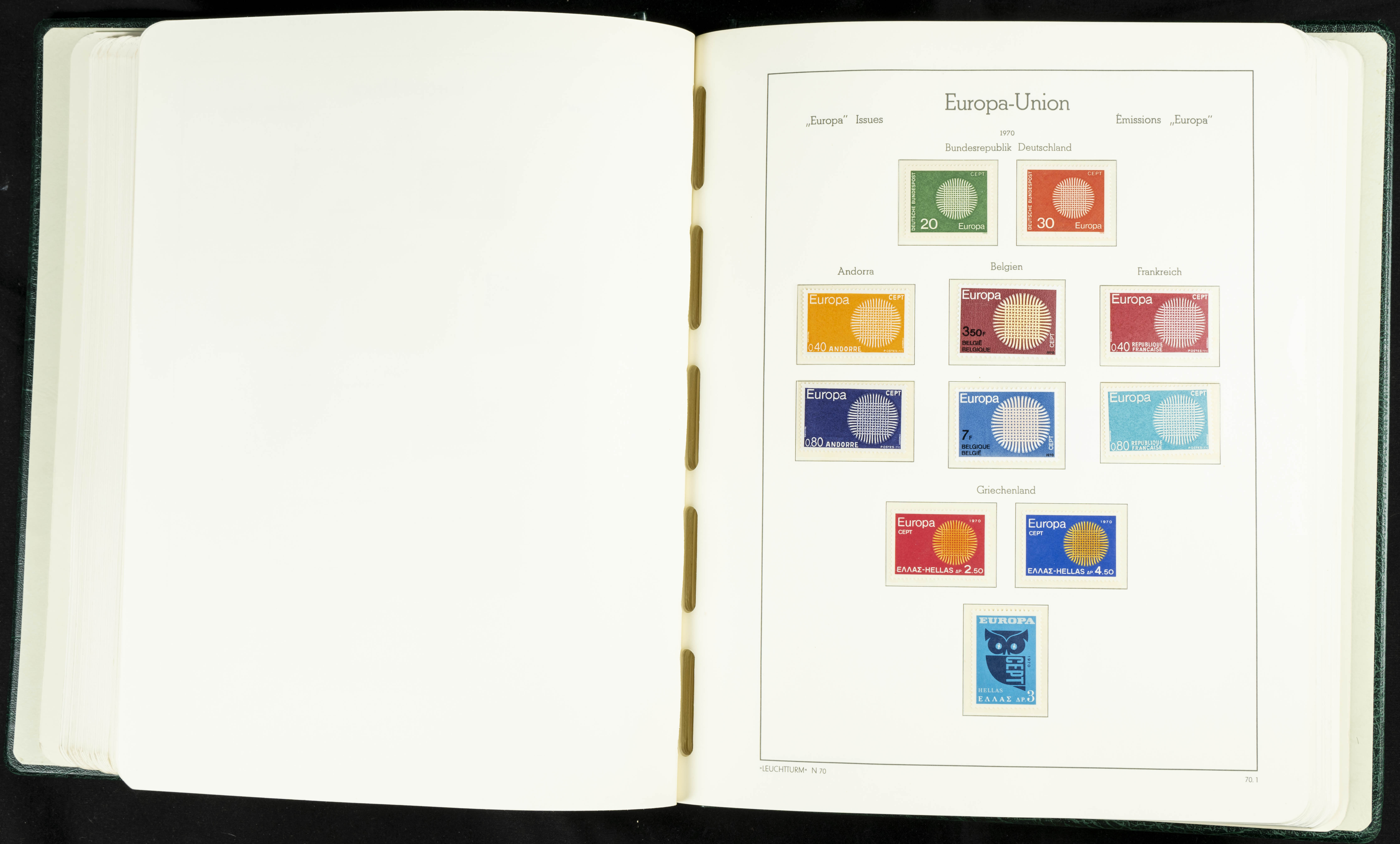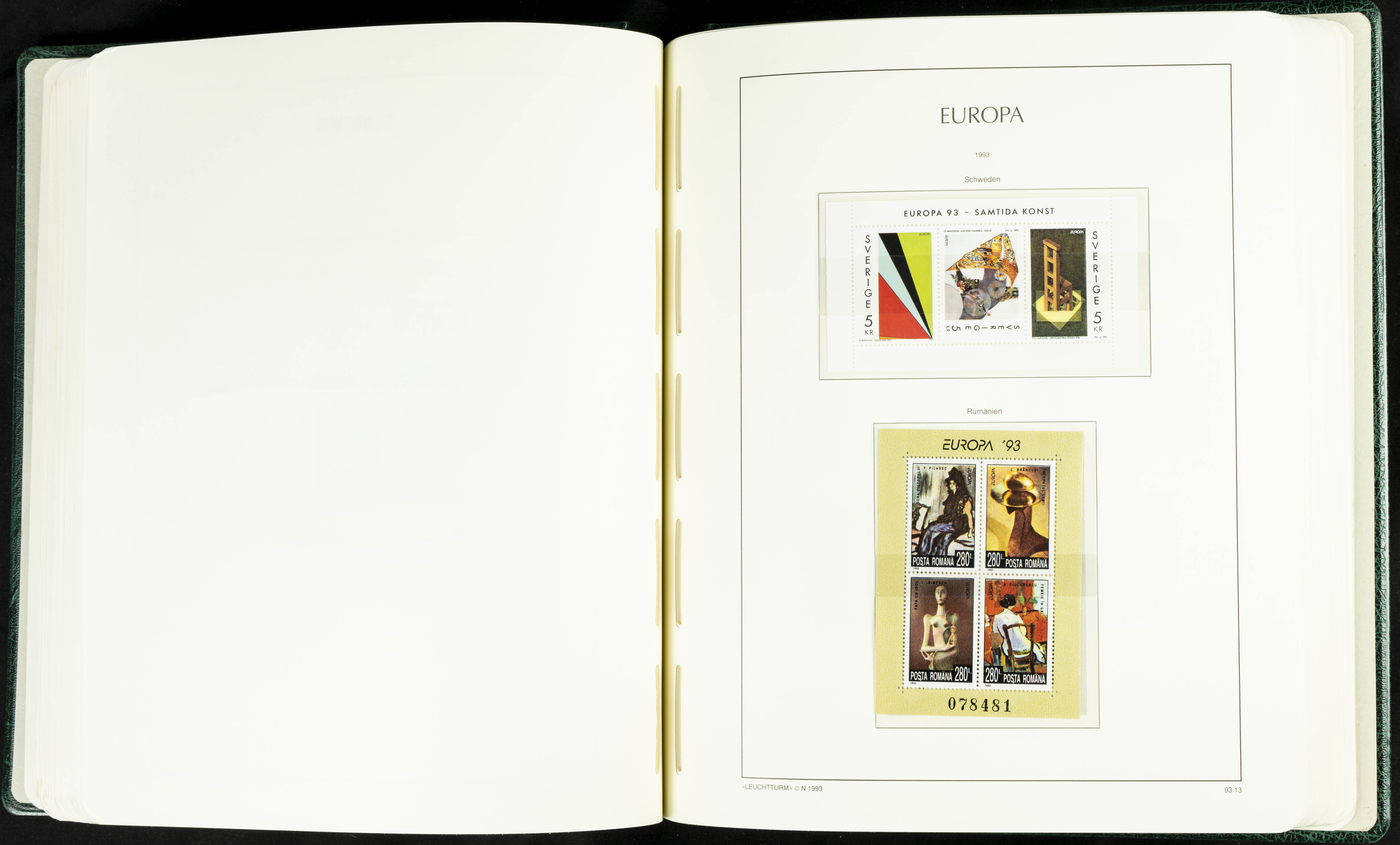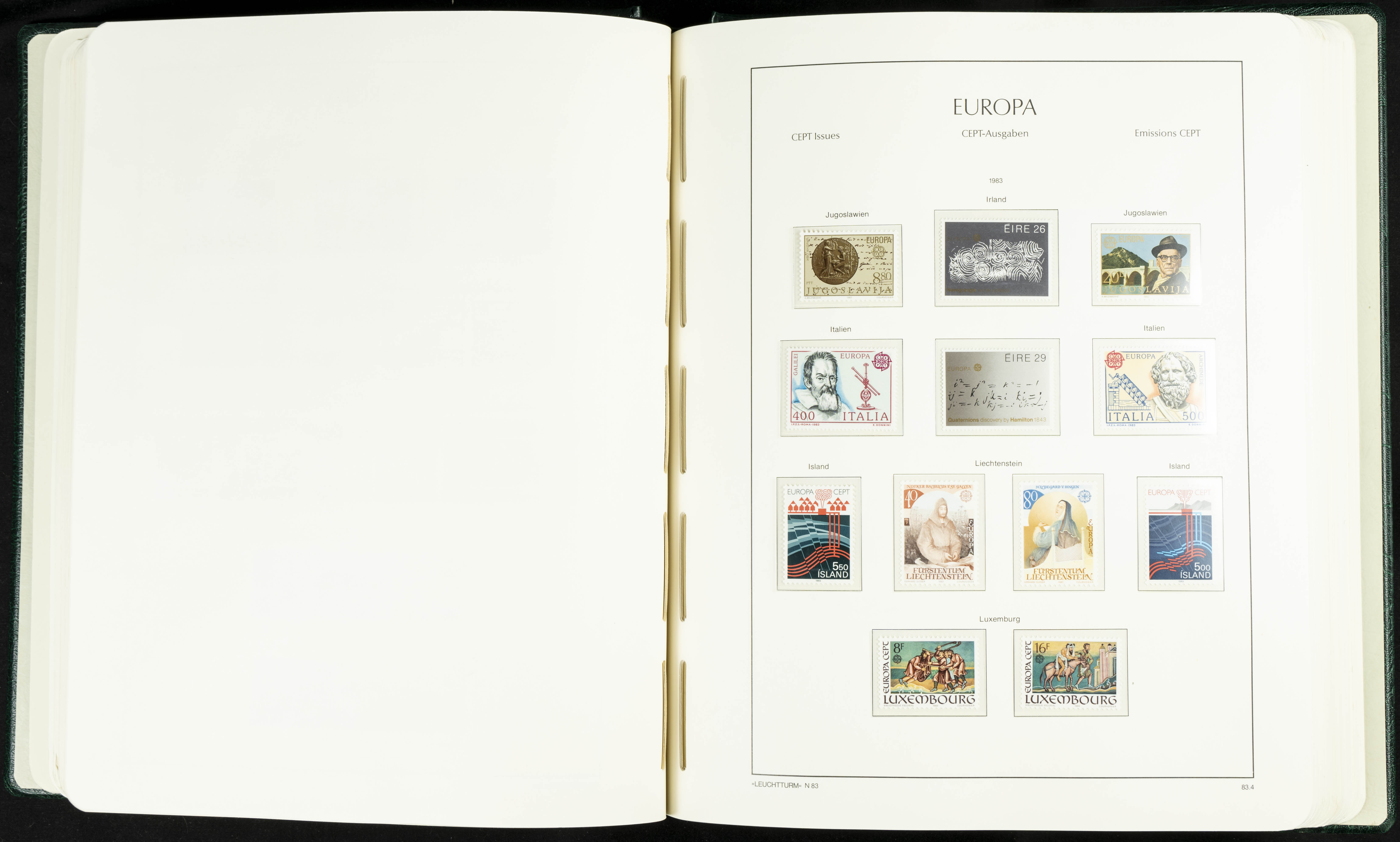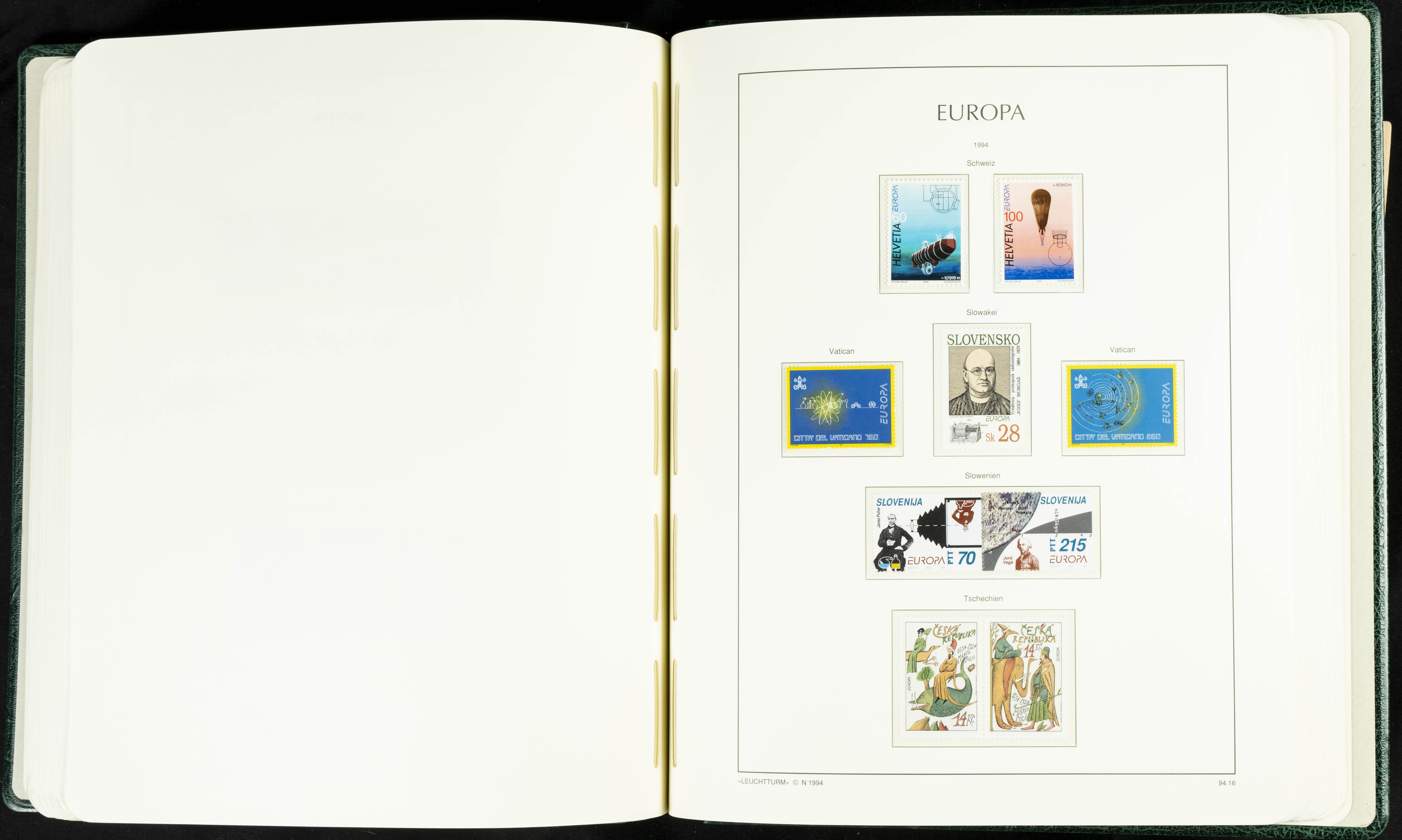 ★★/★(1949ca). Interesante y prácticamente completa colección del Tema Europa y Europeístico (excepto dos series de Italia y Trieste) entre 1949 y 1998, en nuevo sin fijasellos (montada en álbumes Faro). ALTISIMO VALOR DE CATALOGO. A EXAMINAR.