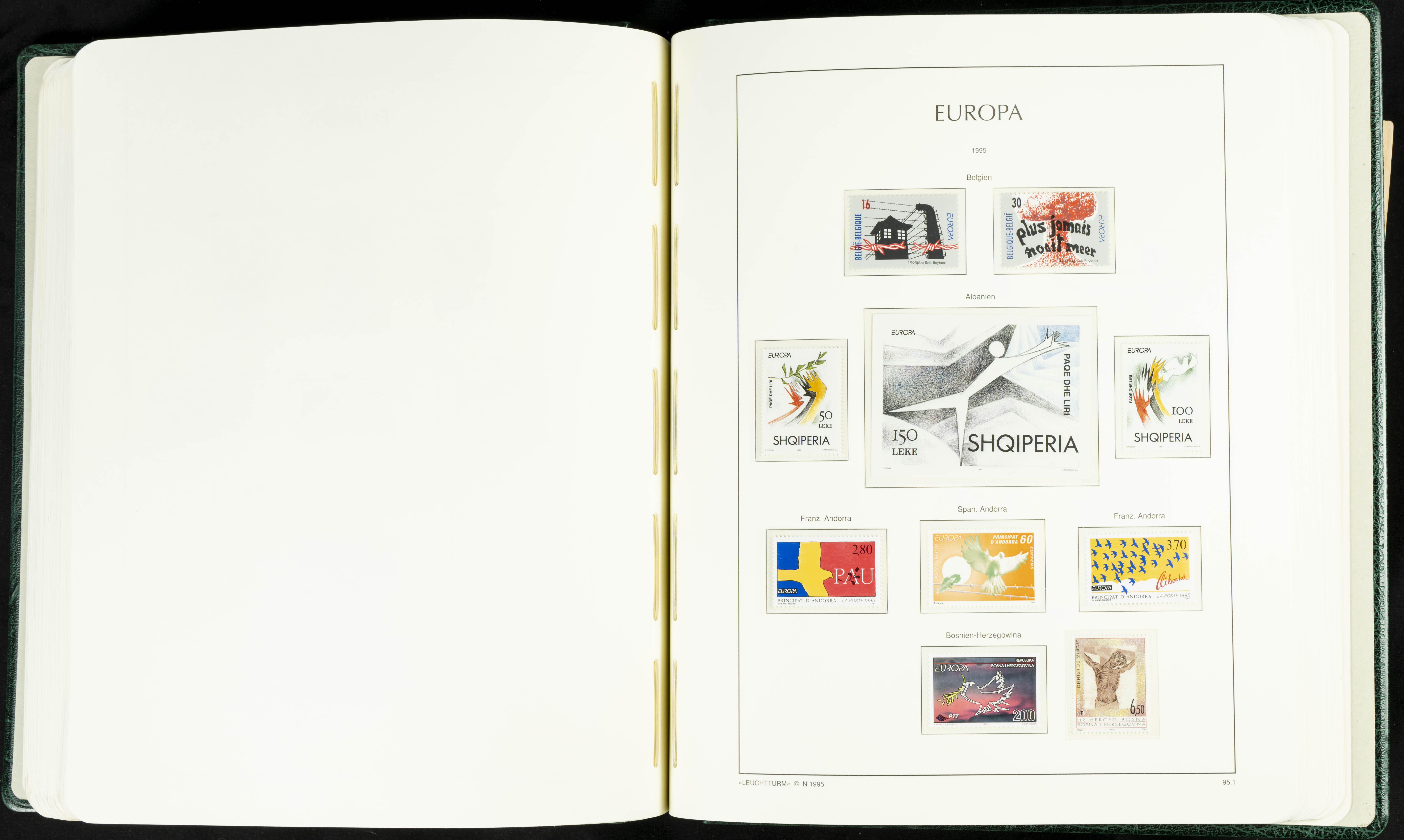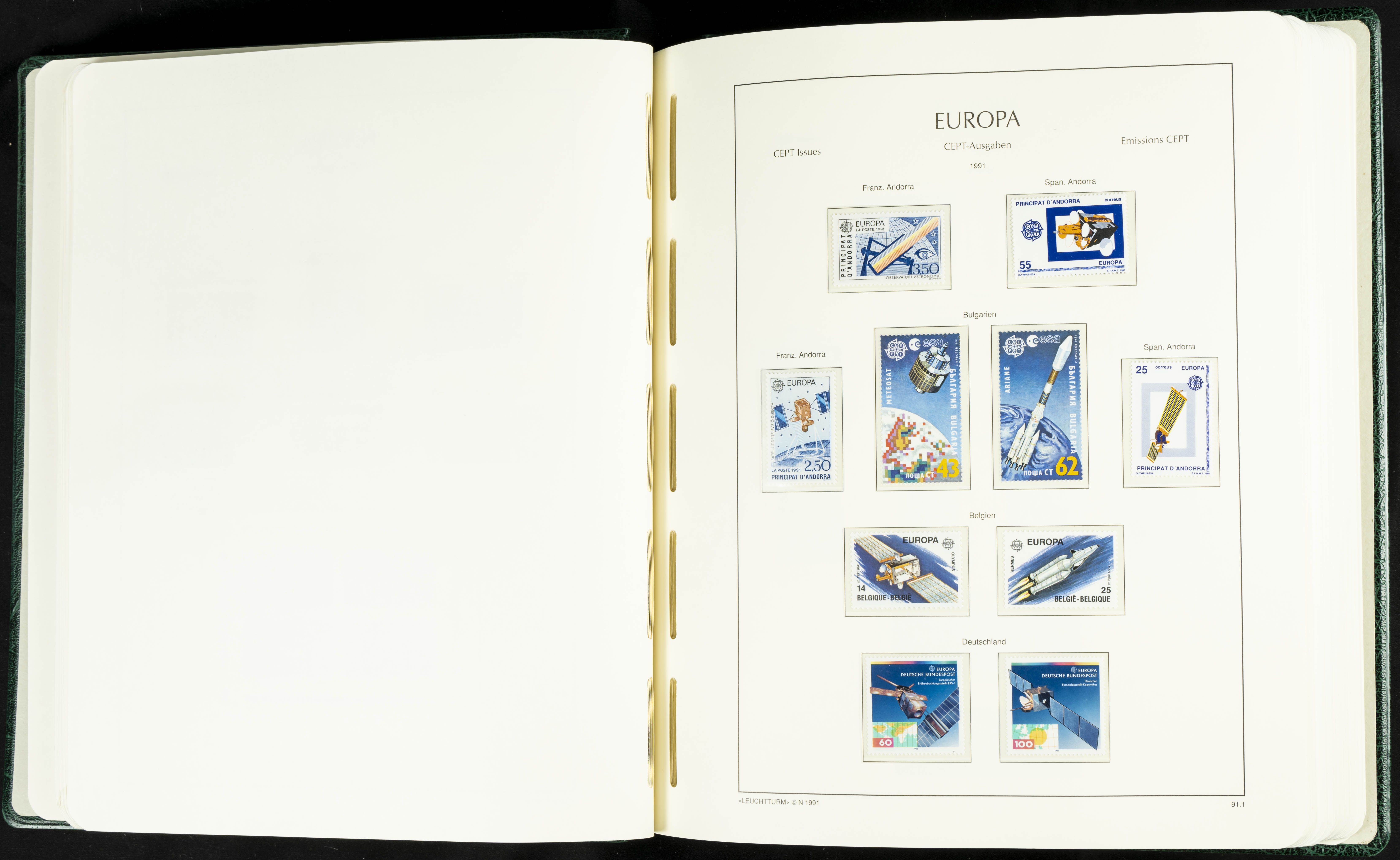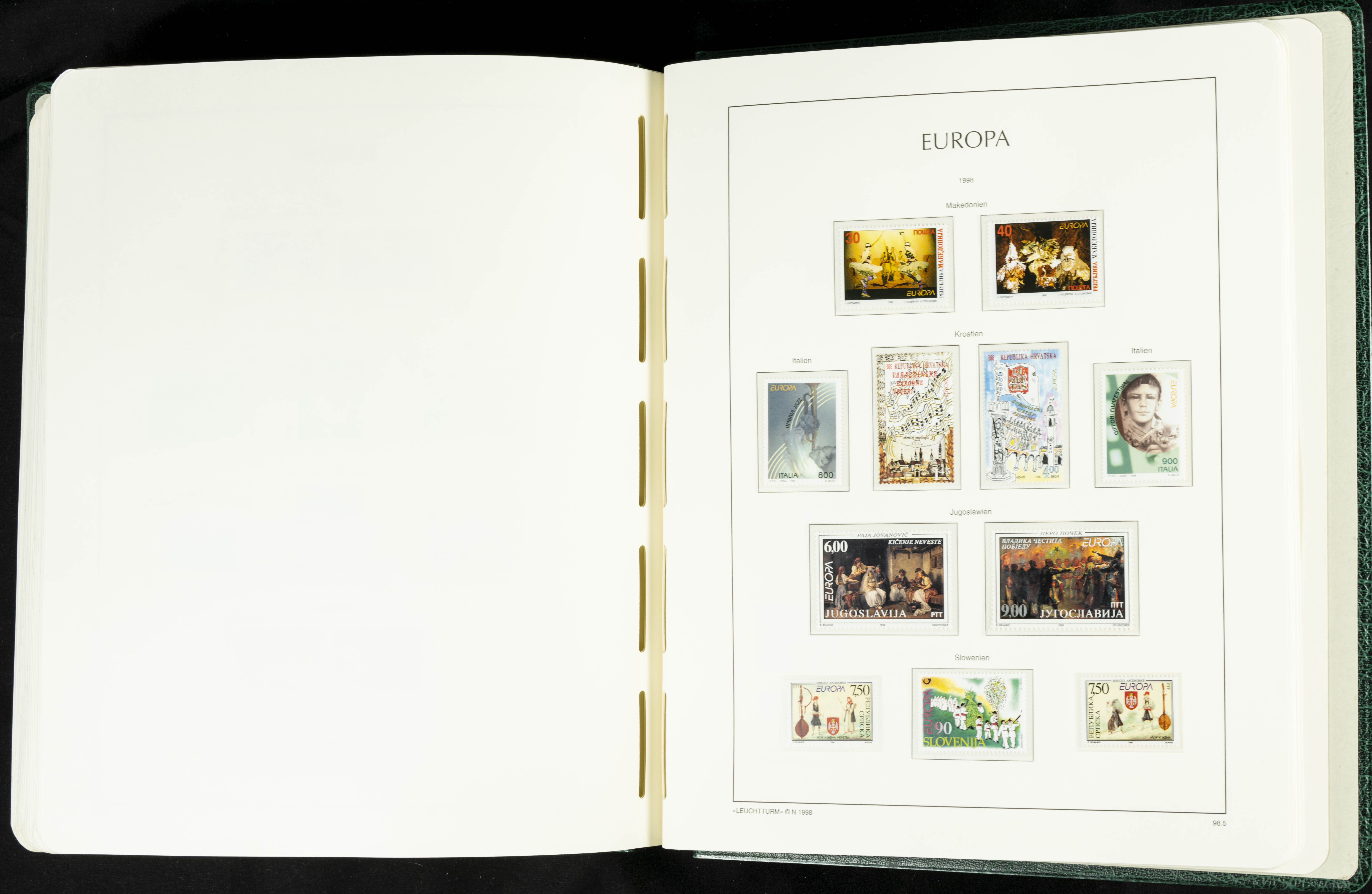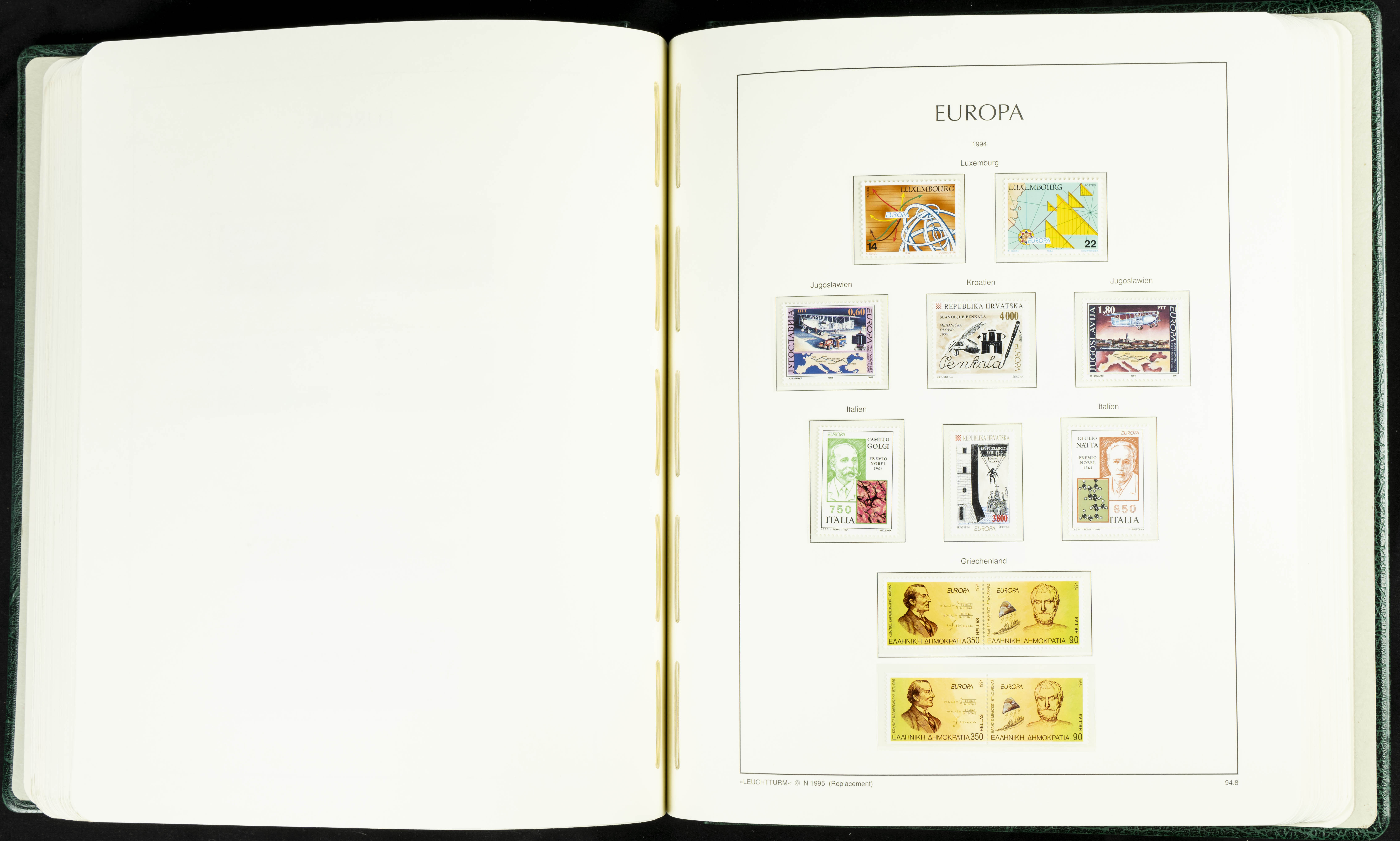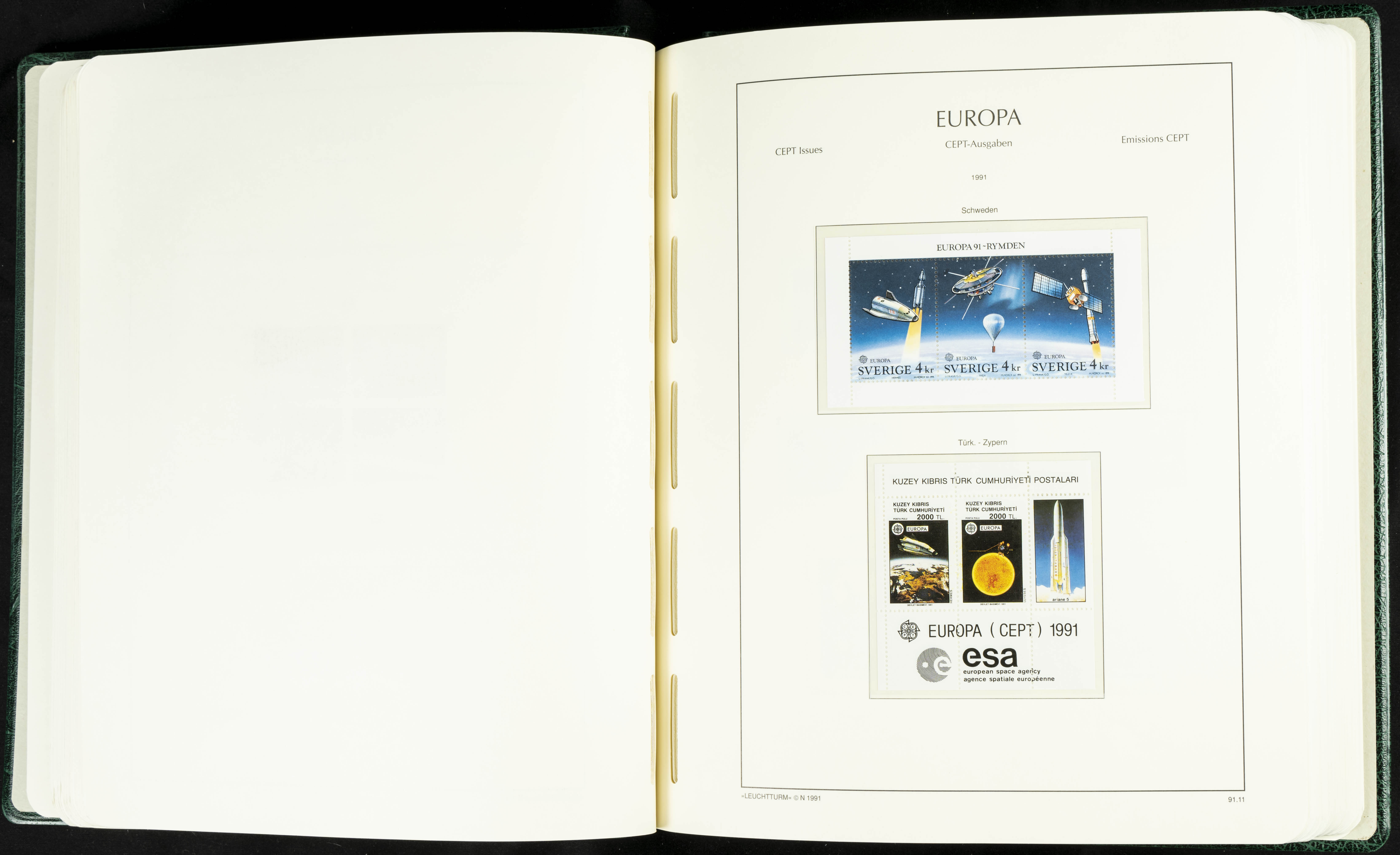 ★★/★(1949ca). Interesante y prácticamente completa colección del Tema Europa y Europeístico (excepto dos series de Italia y Trieste) entre 1949 y 1998, en nuevo sin fijasellos (montada en álbumes Faro). ALTISIMO VALOR DE CATALOGO. A EXAMINAR.