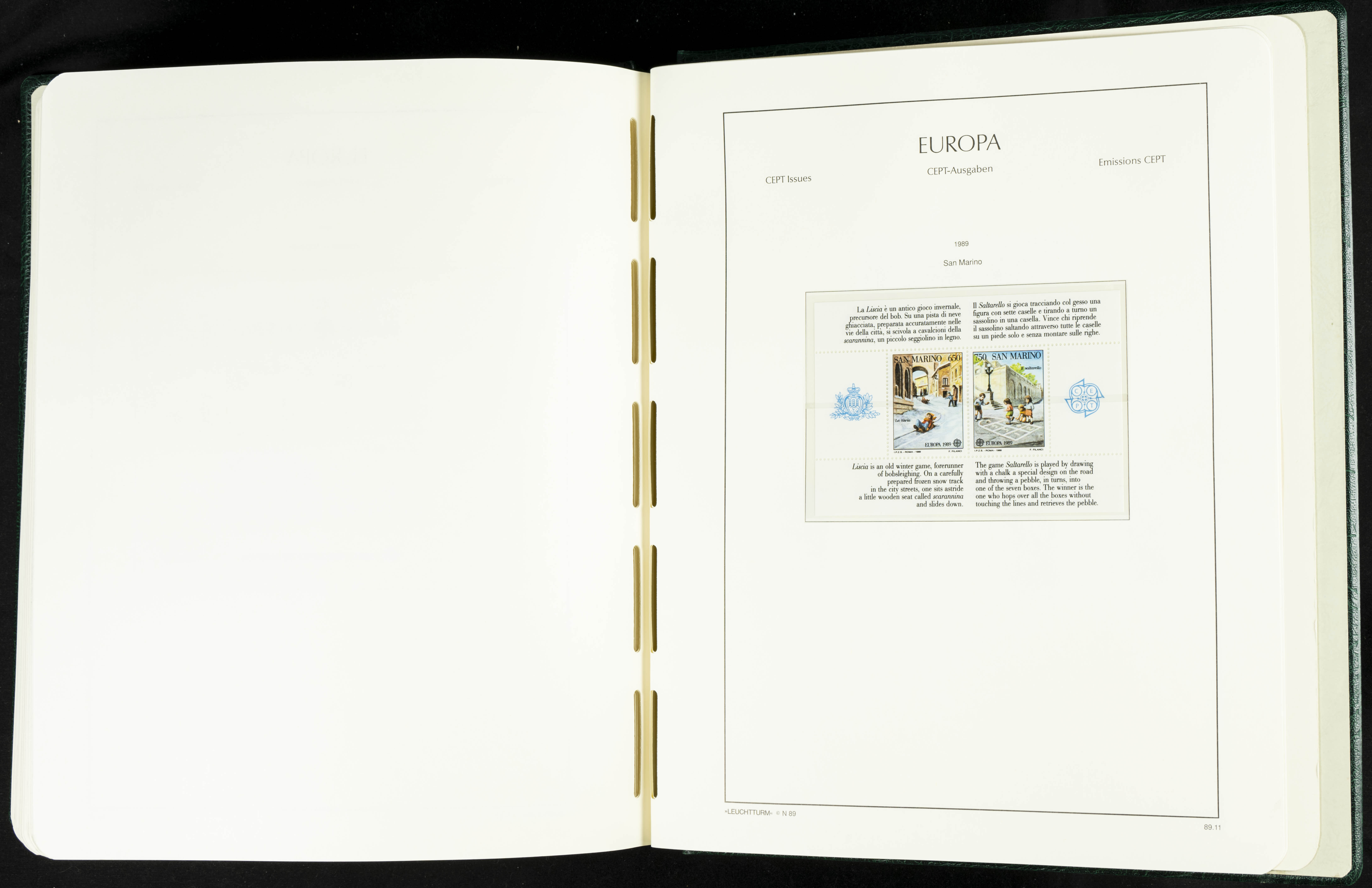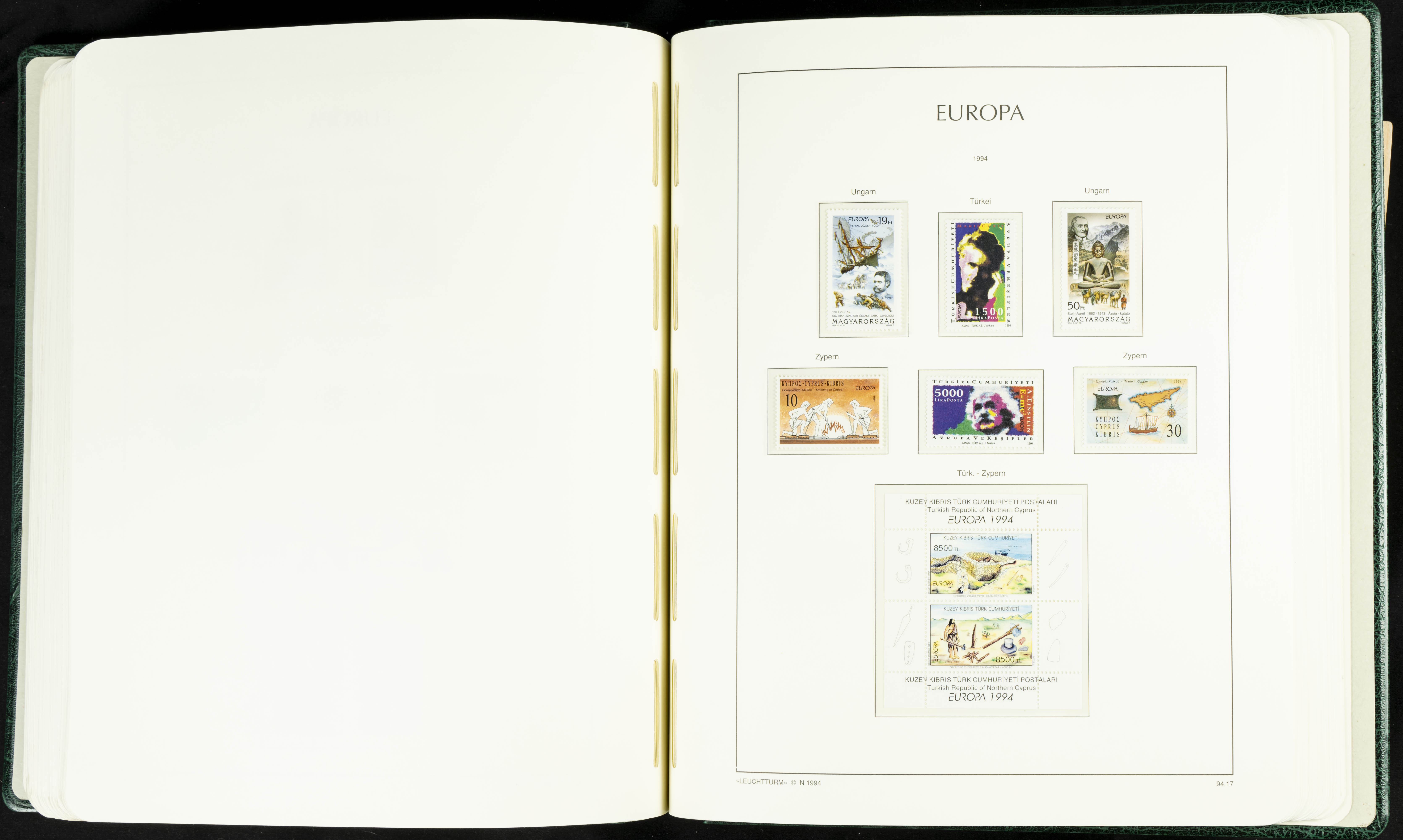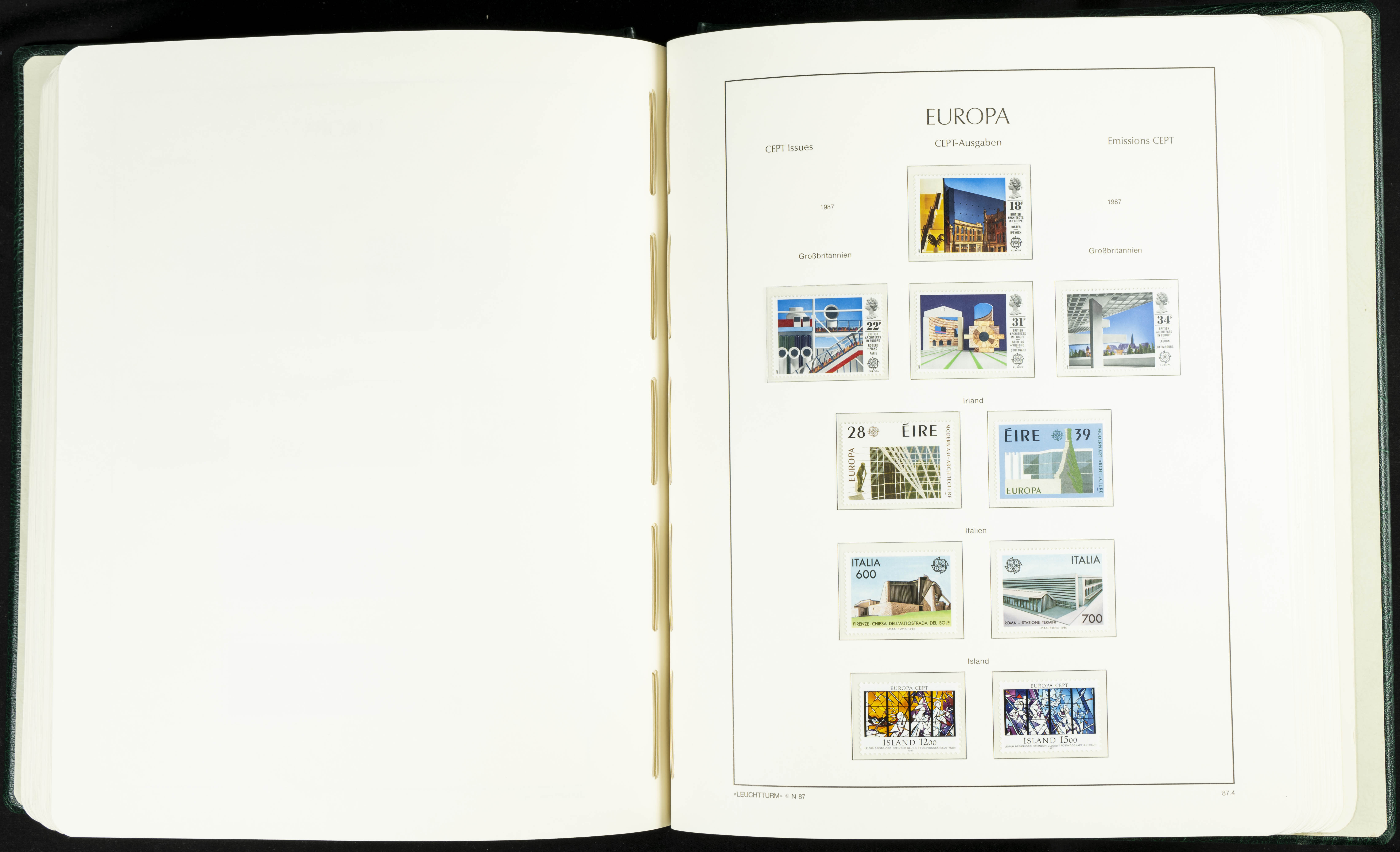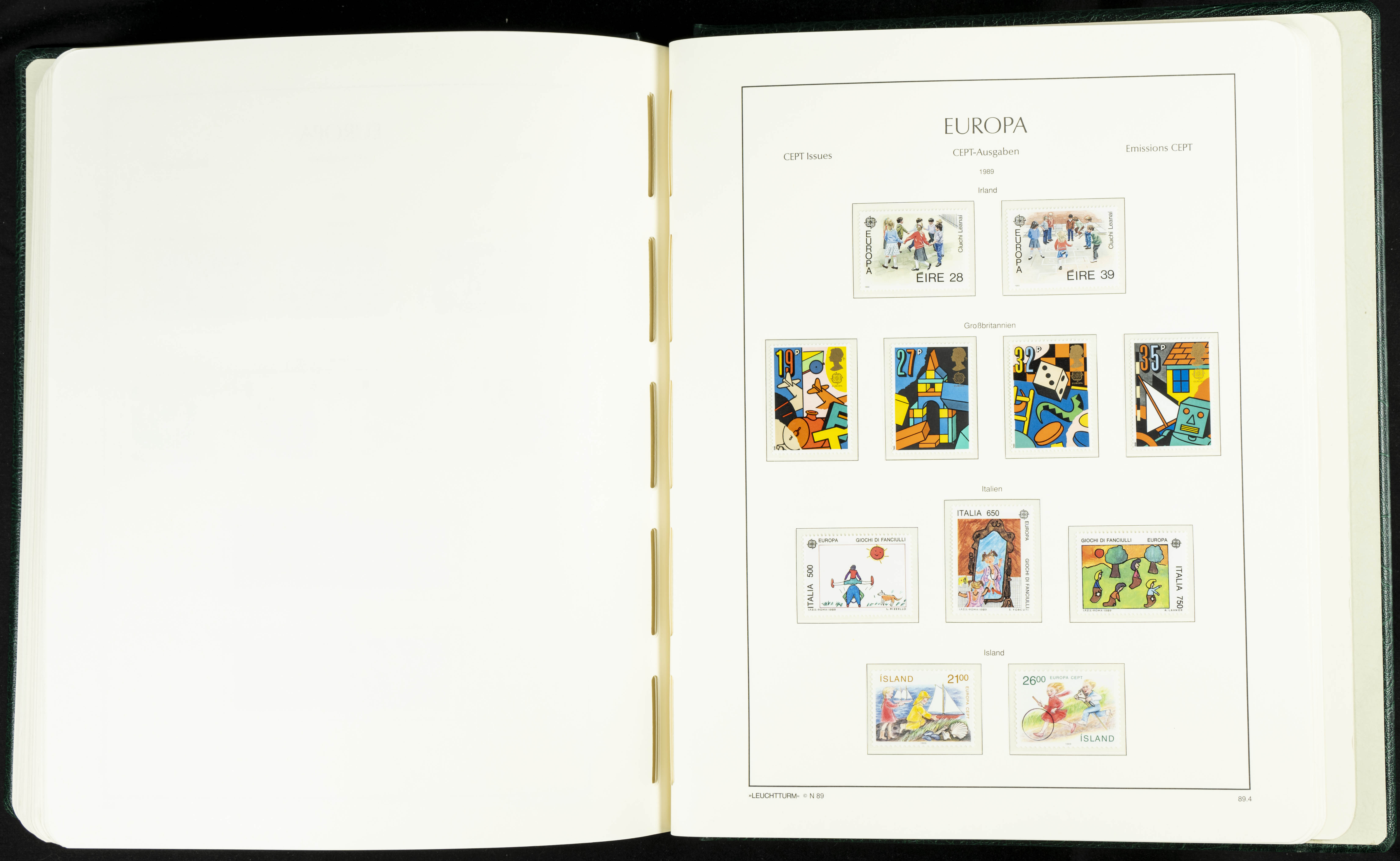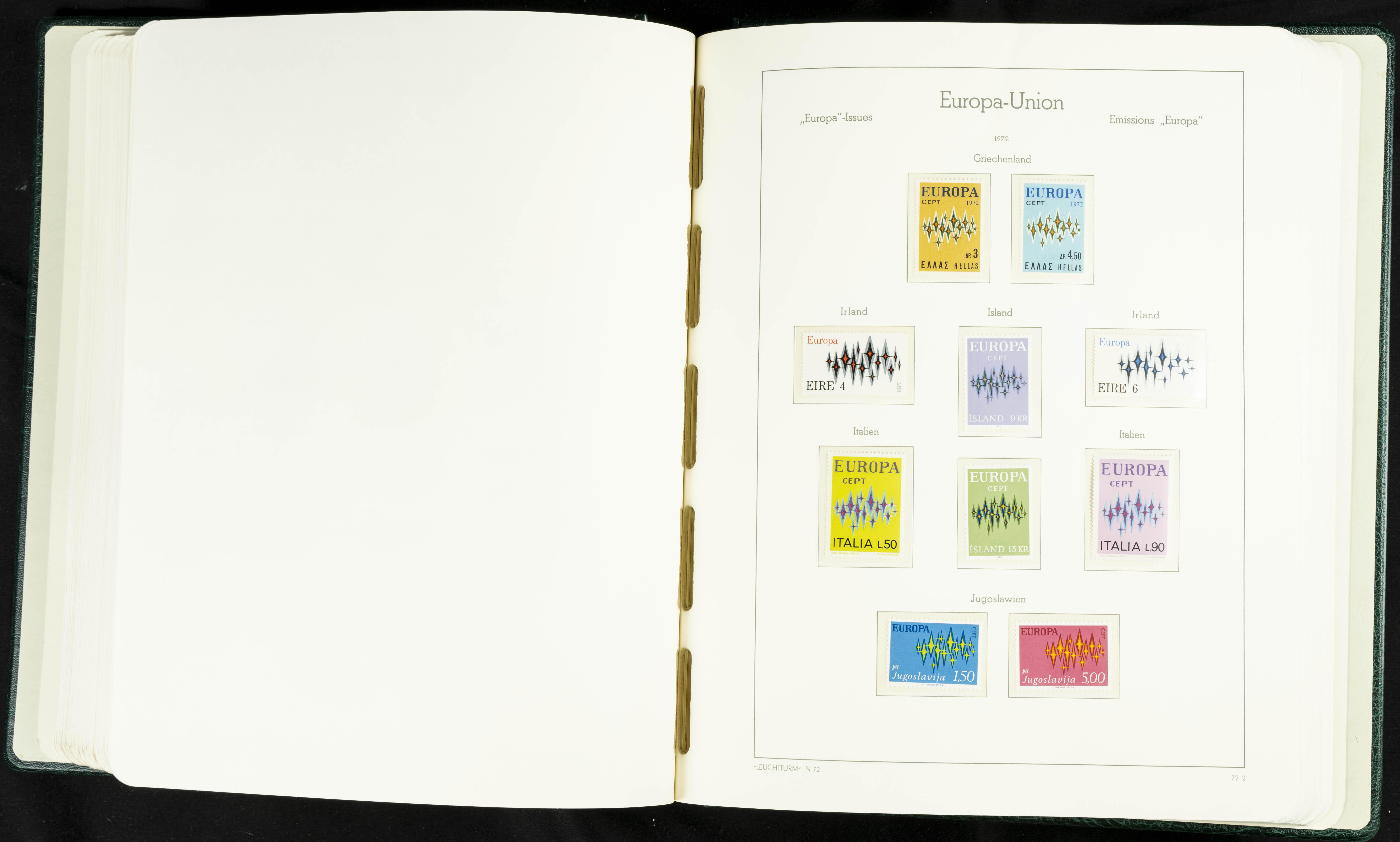 ★★/★(1949ca). Interesante y prácticamente completa colección del Tema Europa y Europeístico (excepto dos series de Italia y Trieste) entre 1949 y 1998, en nuevo sin fijasellos (montada en álbumes Faro). ALTISIMO VALOR DE CATALOGO. A EXAMINAR.