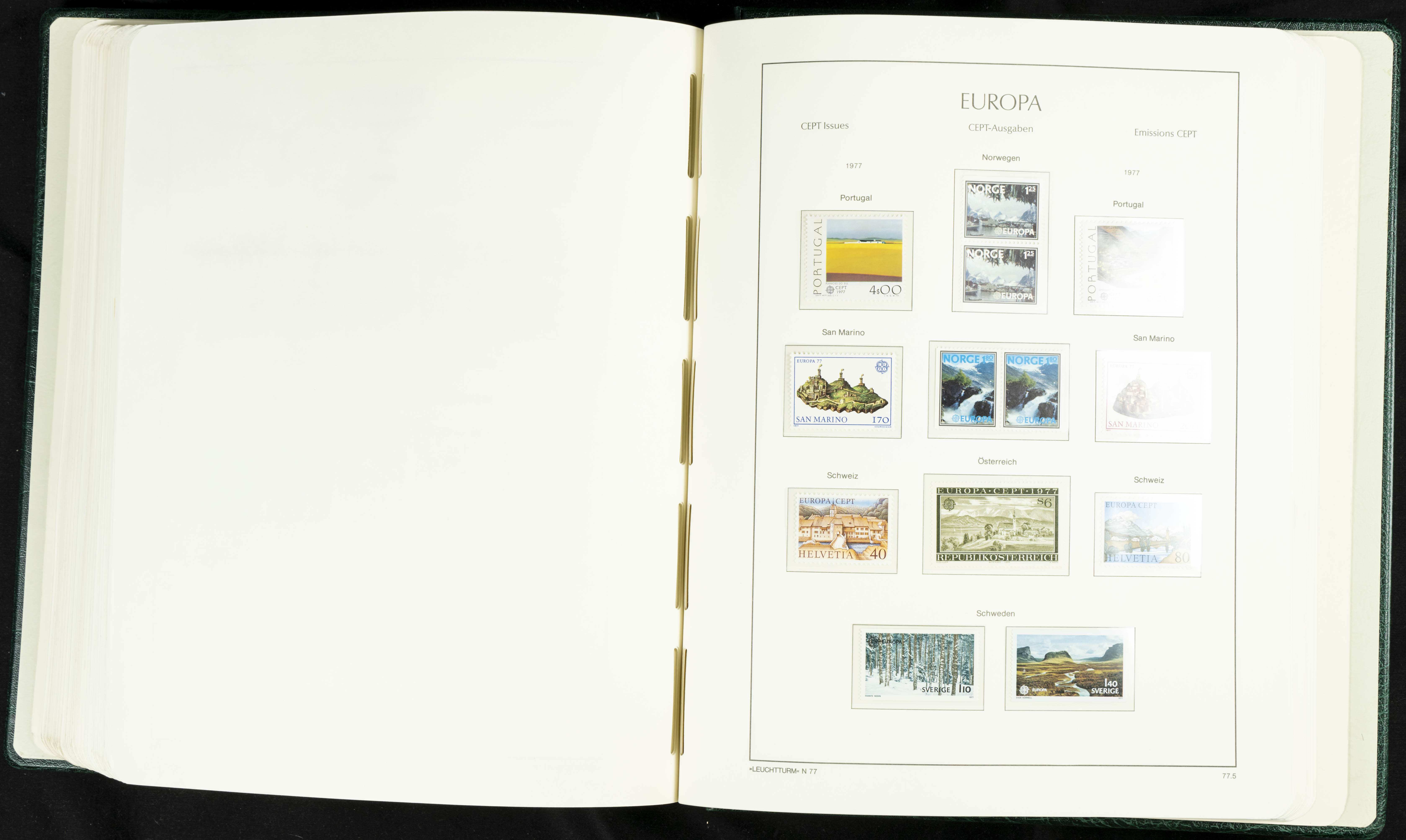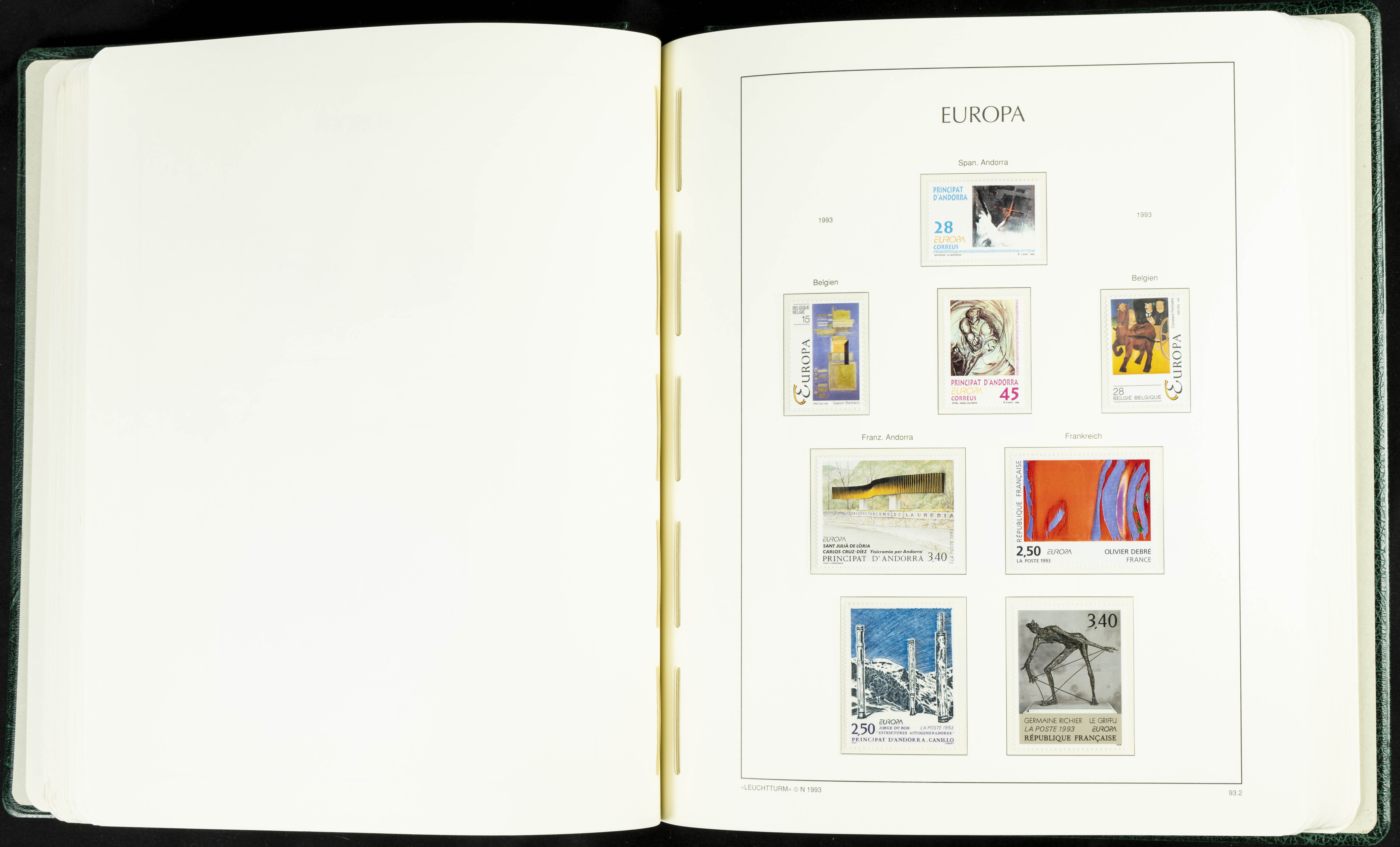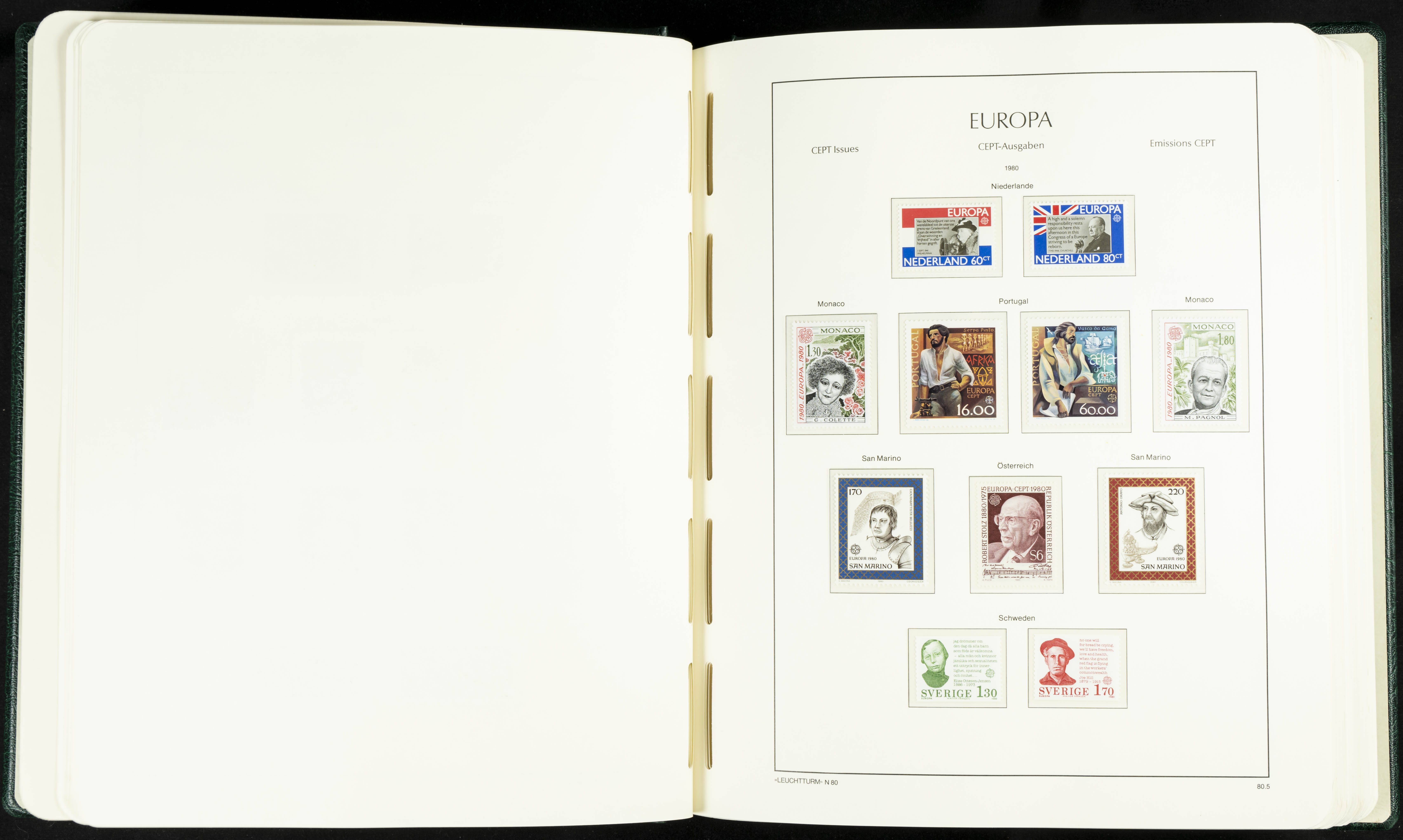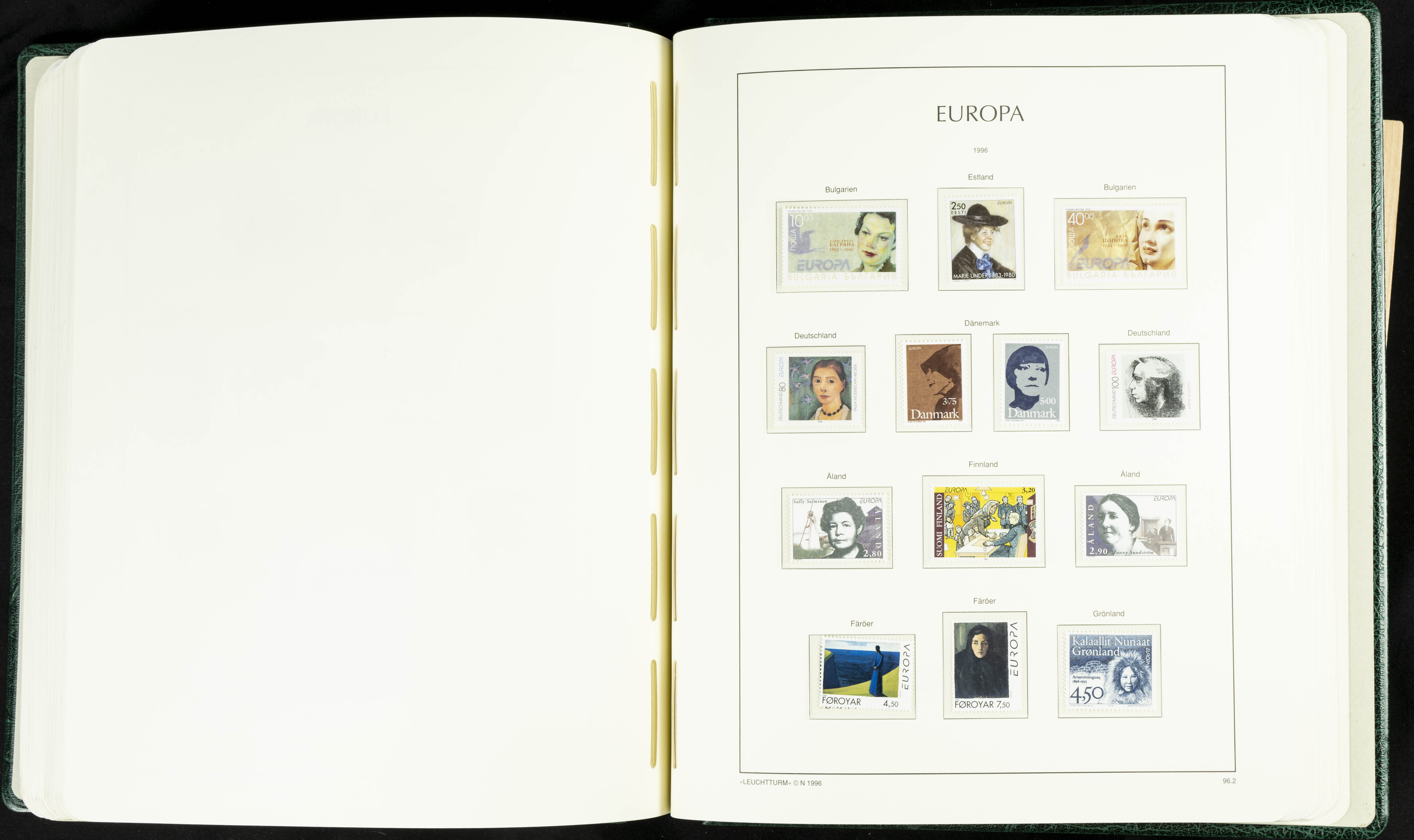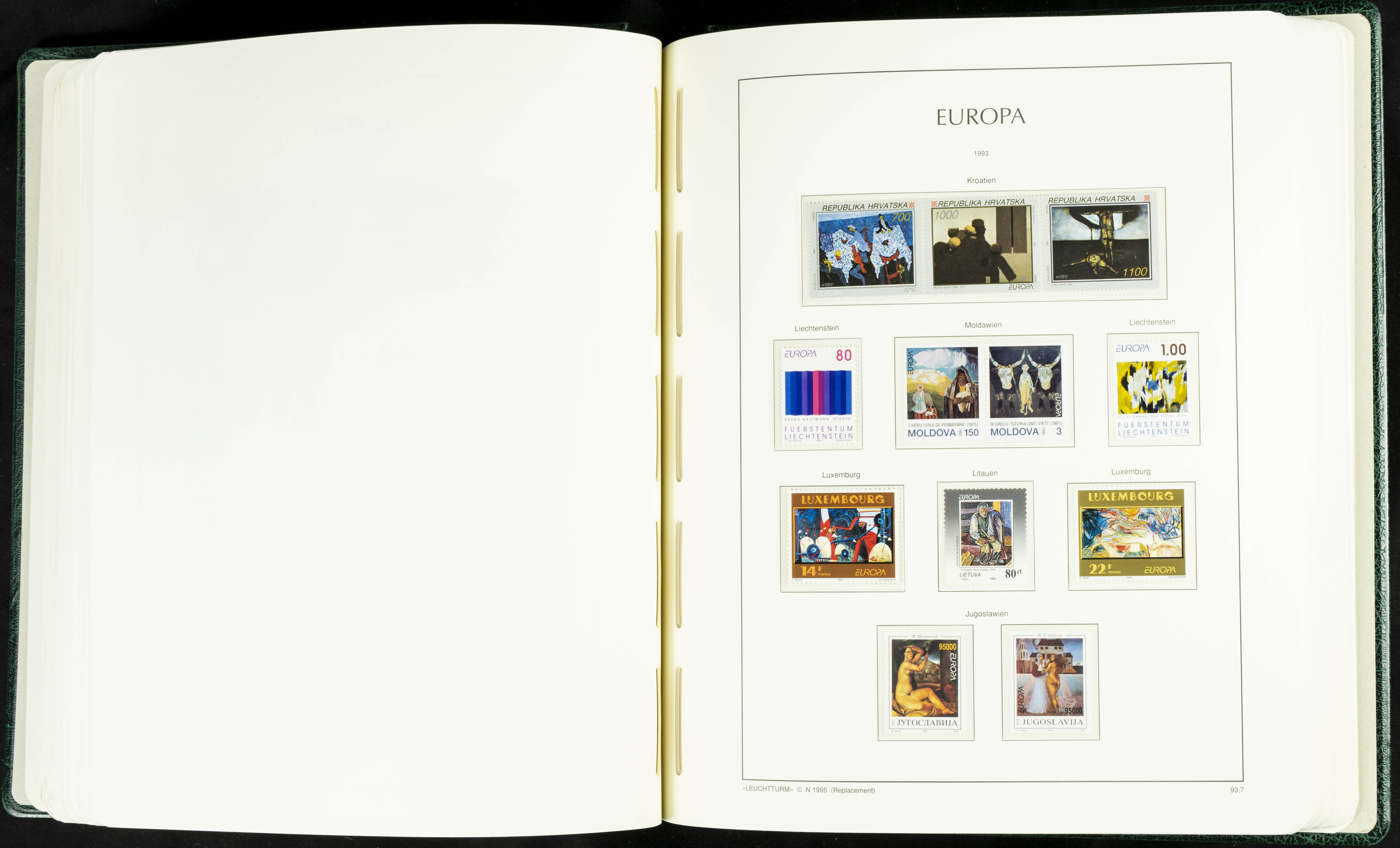 ★★/★(1949ca). Interesante y prácticamente completa colección del Tema Europa y Europeístico (excepto dos series de Italia y Trieste) entre 1949 y 1998, en nuevo sin fijasellos (montada en álbumes Faro). ALTISIMO VALOR DE CATALOGO. A EXAMINAR.