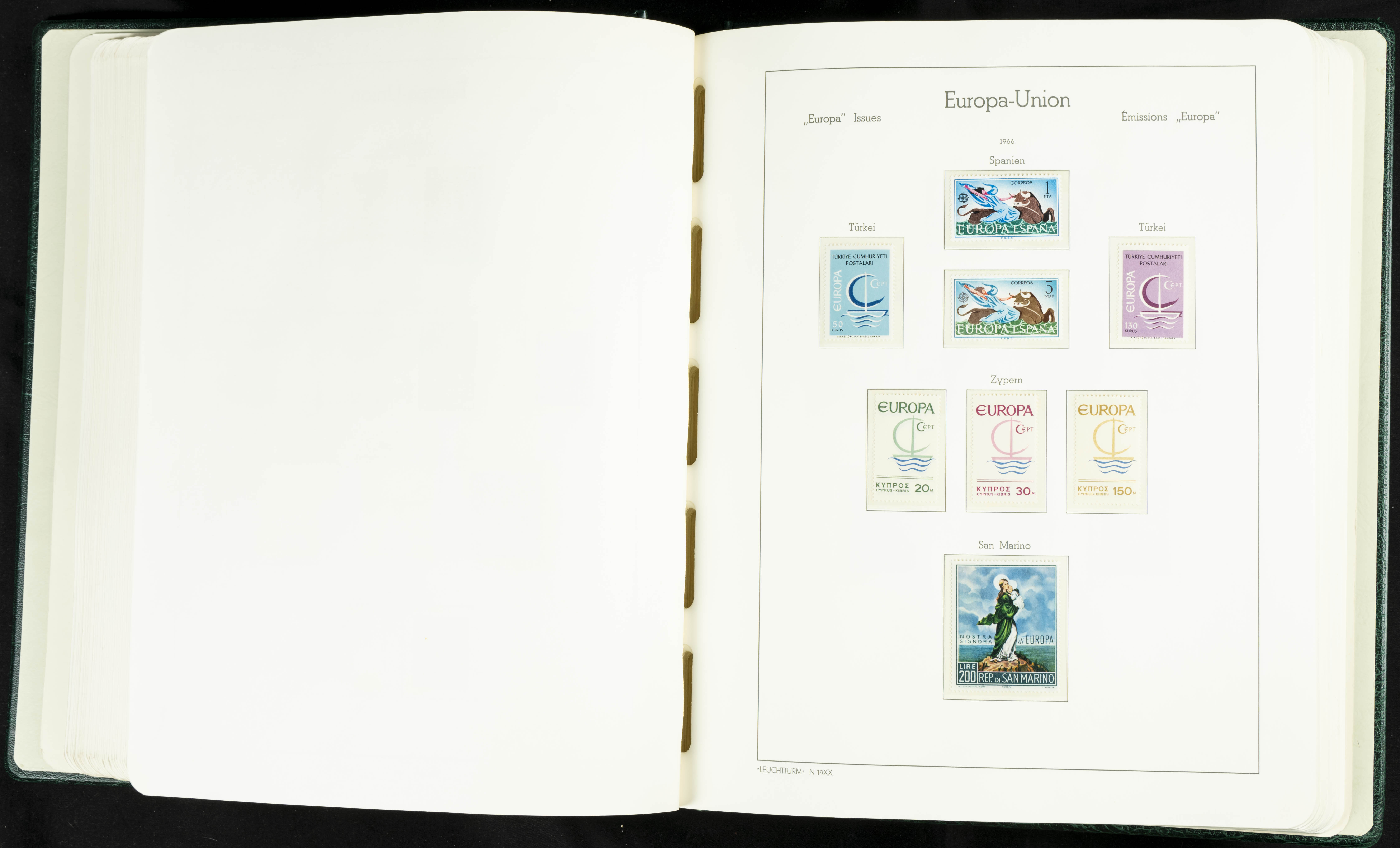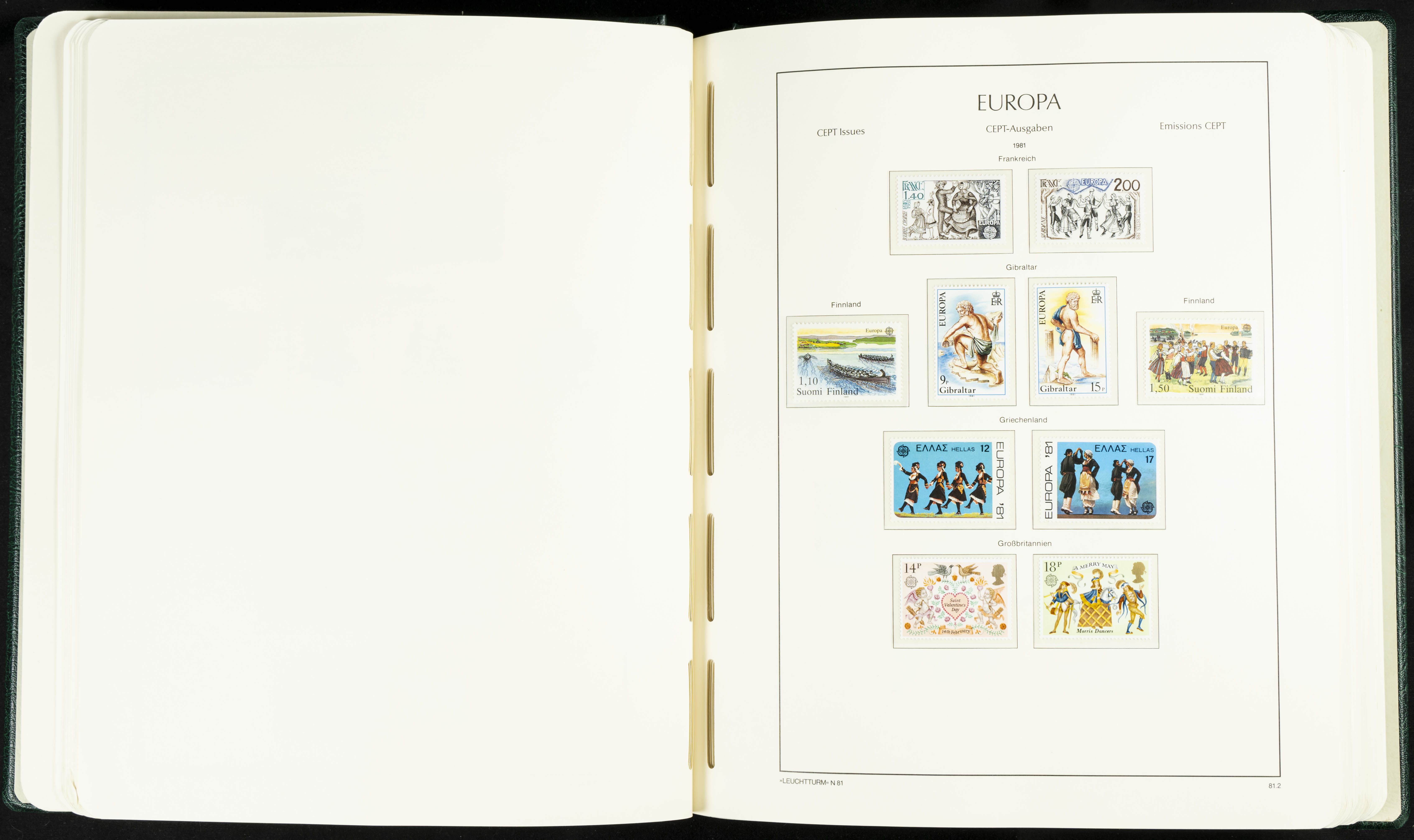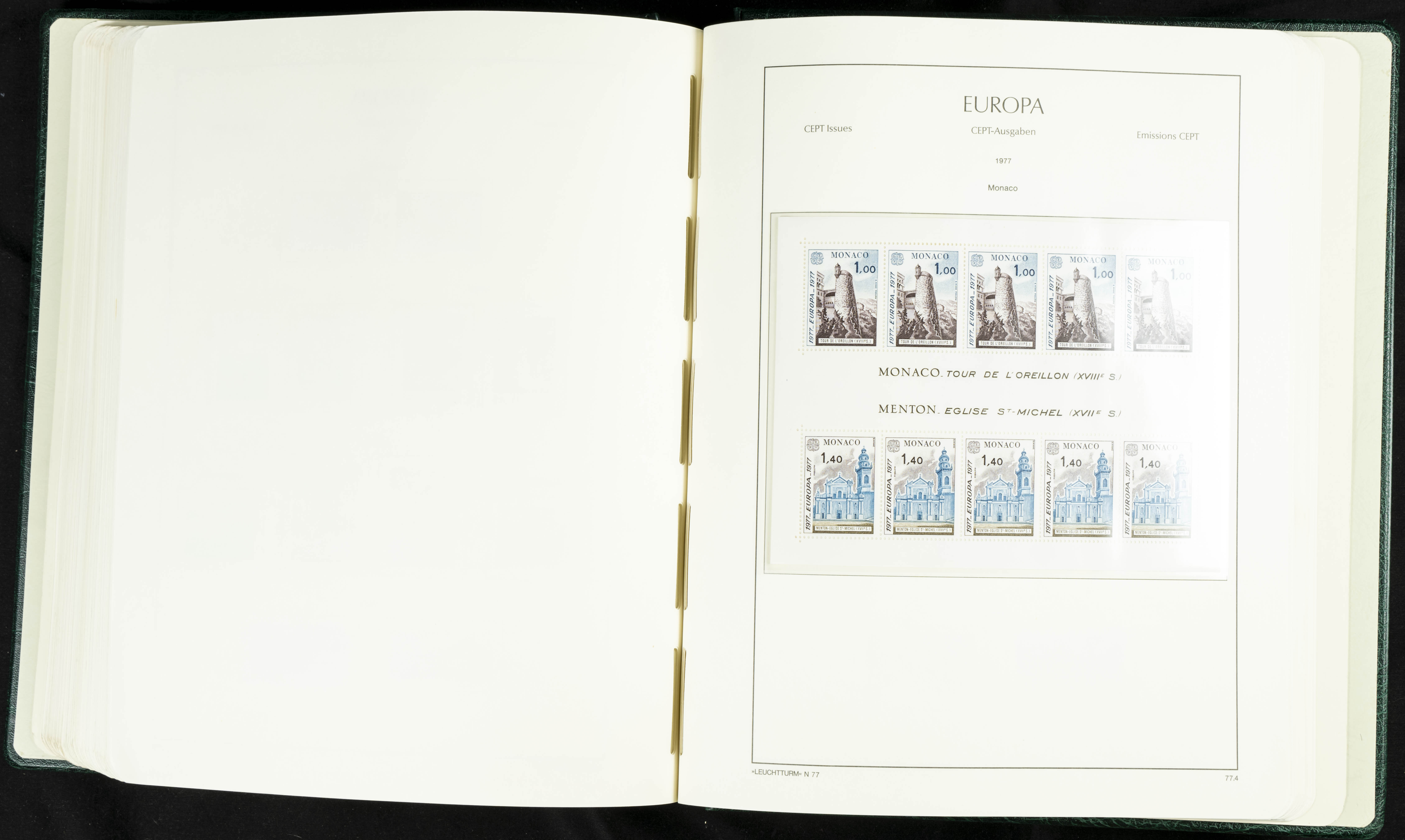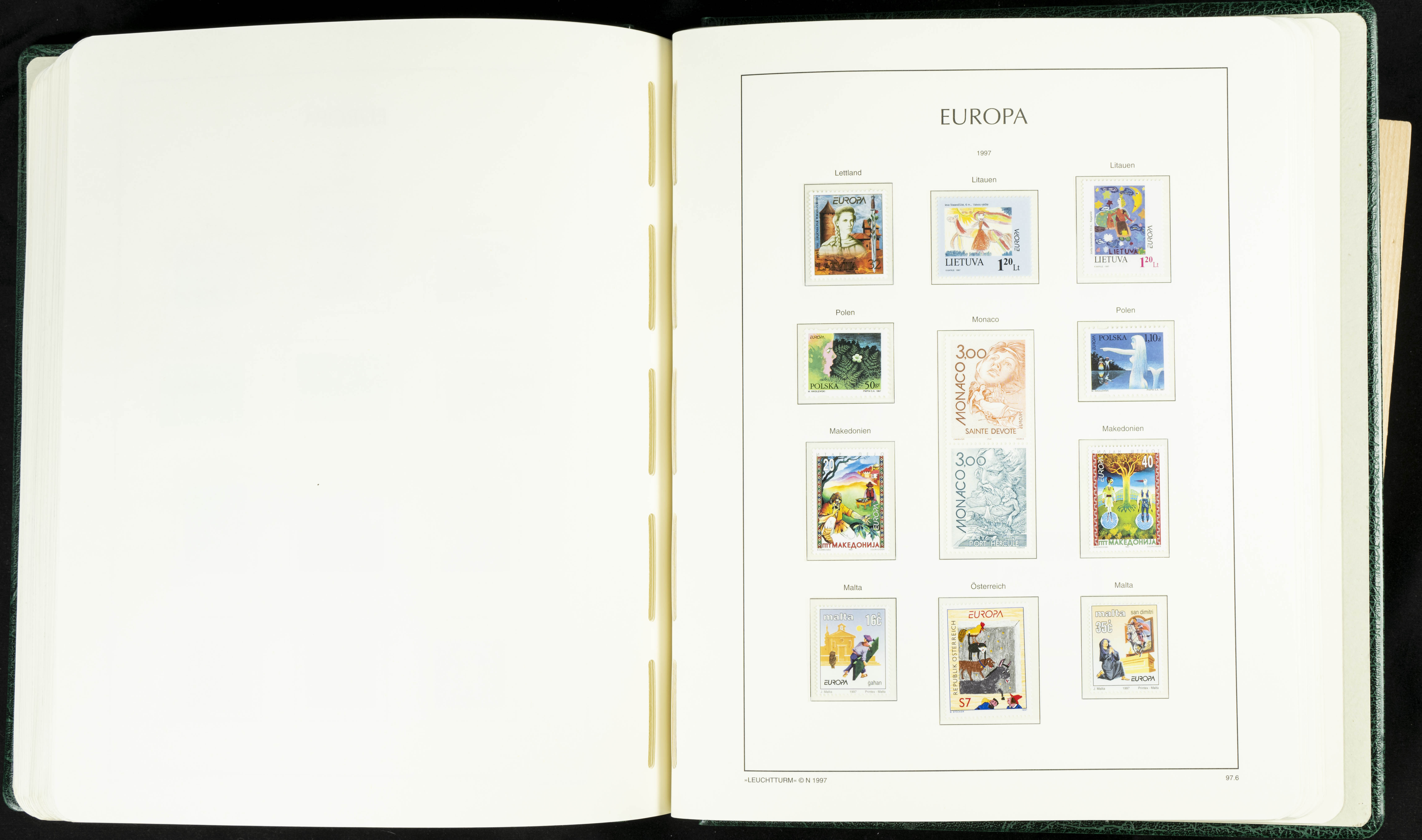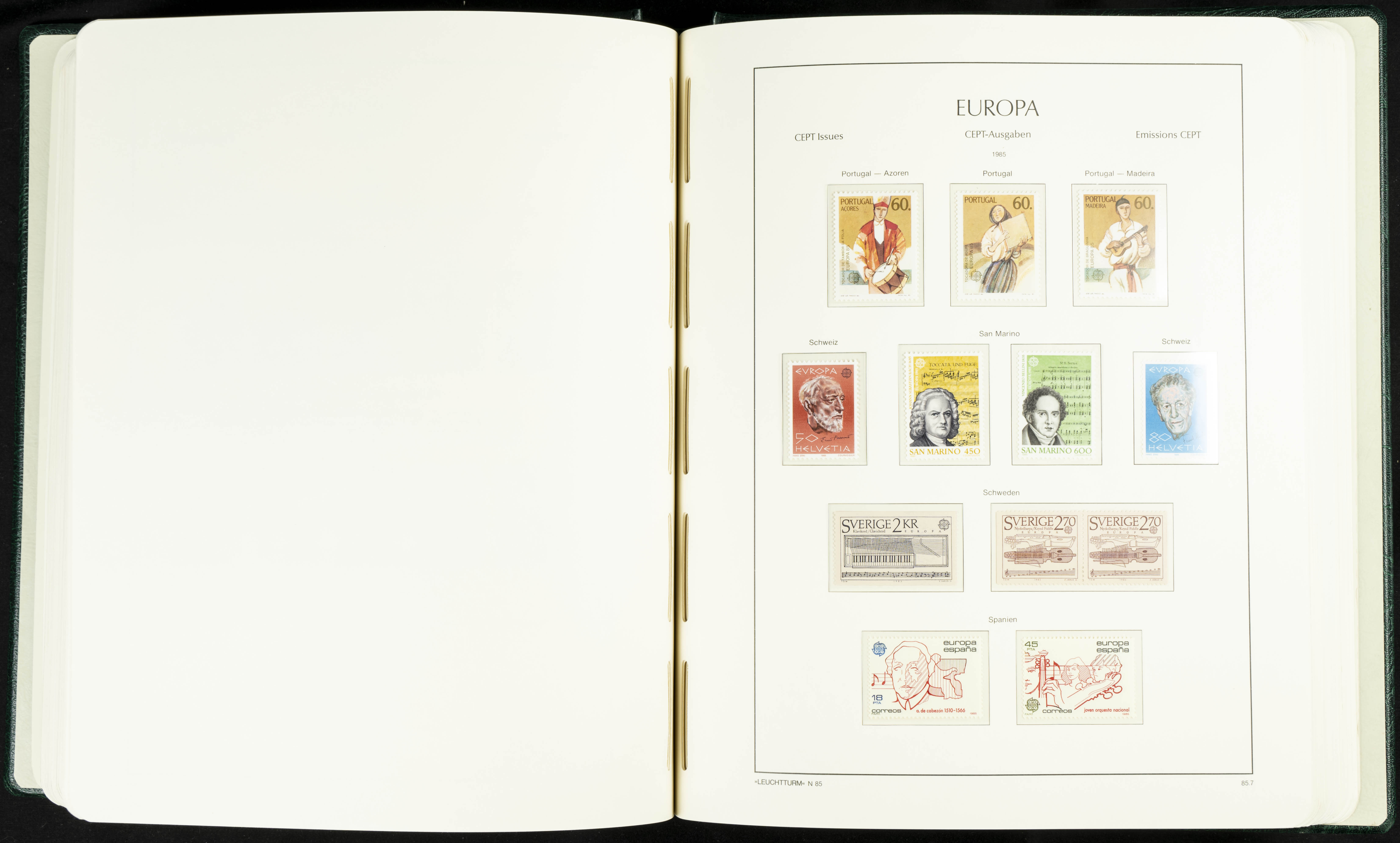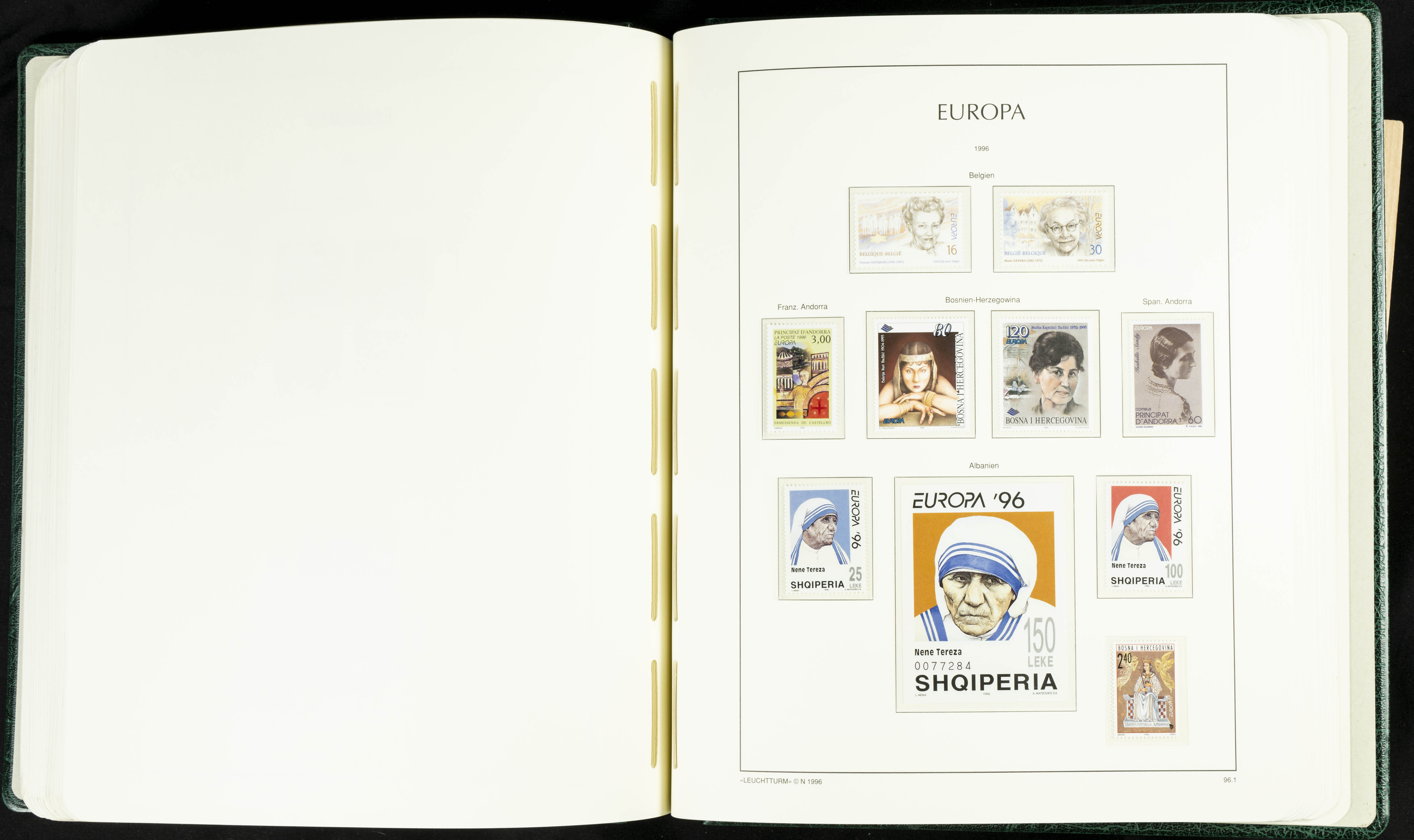 ★★/★(1949ca). Interesante y prácticamente completa colección del Tema Europa y Europeístico (excepto dos series de Italia y Trieste) entre 1949 y 1998, en nuevo sin fijasellos (montada en álbumes Faro). ALTISIMO VALOR DE CATALOGO. A EXAMINAR.