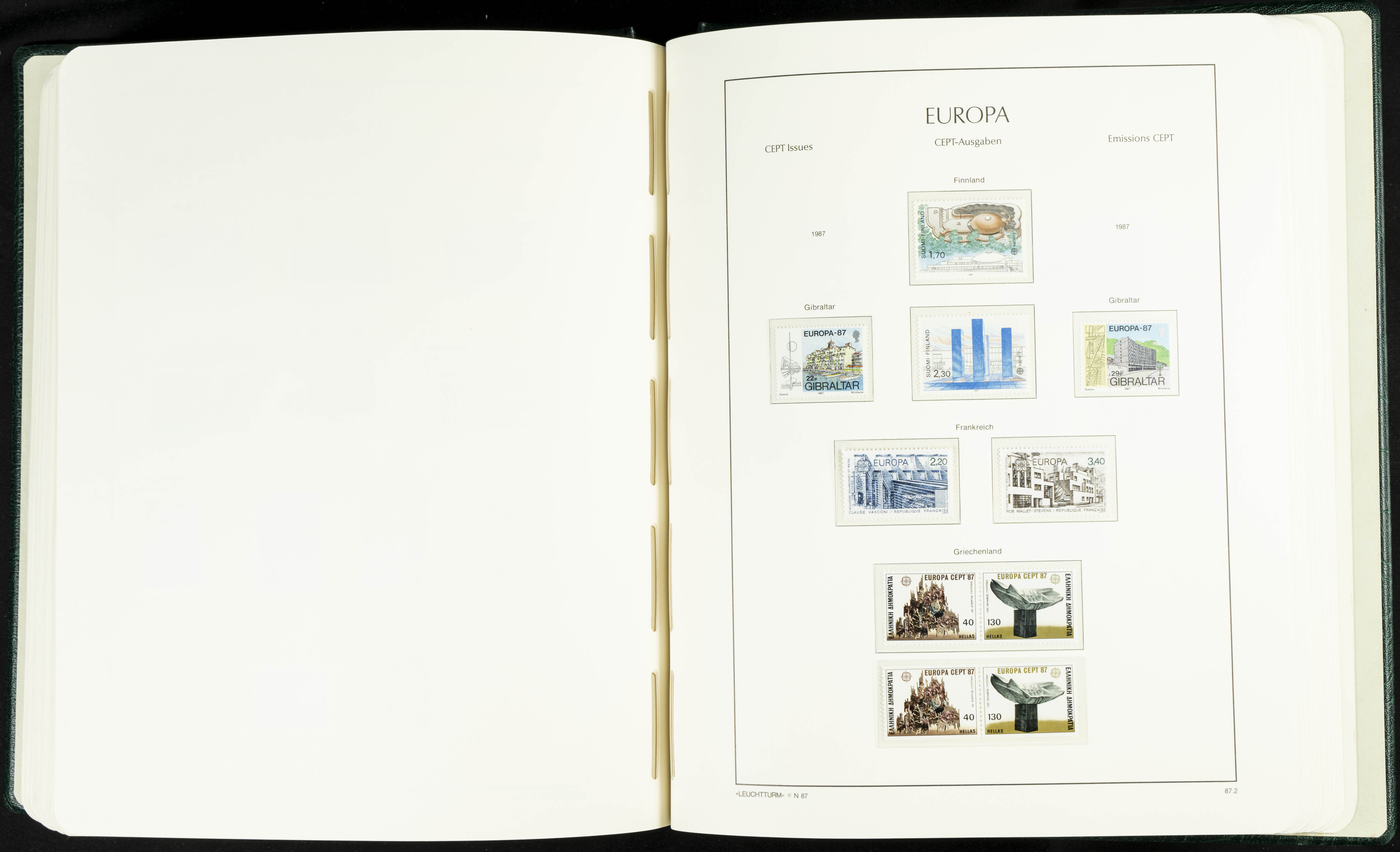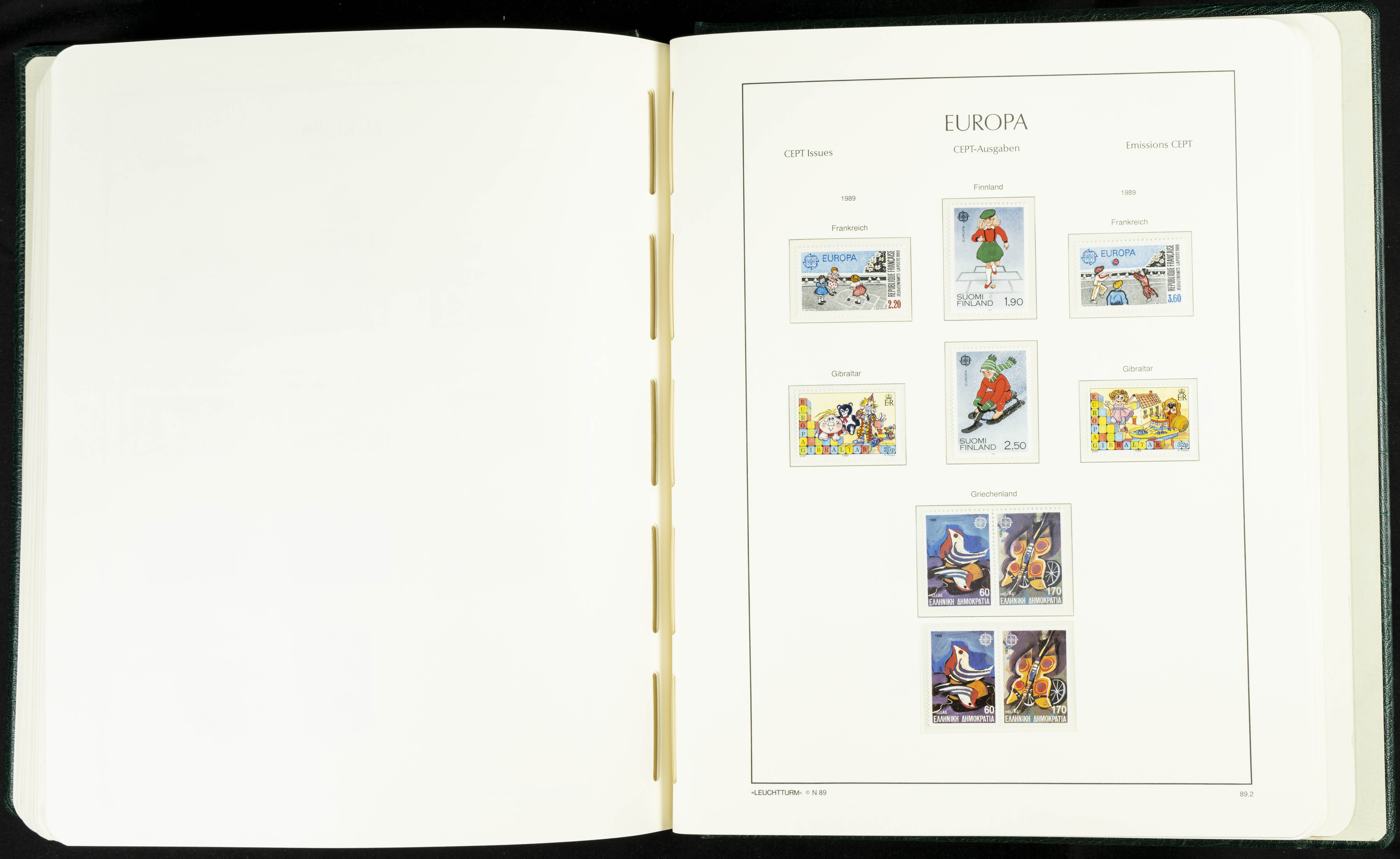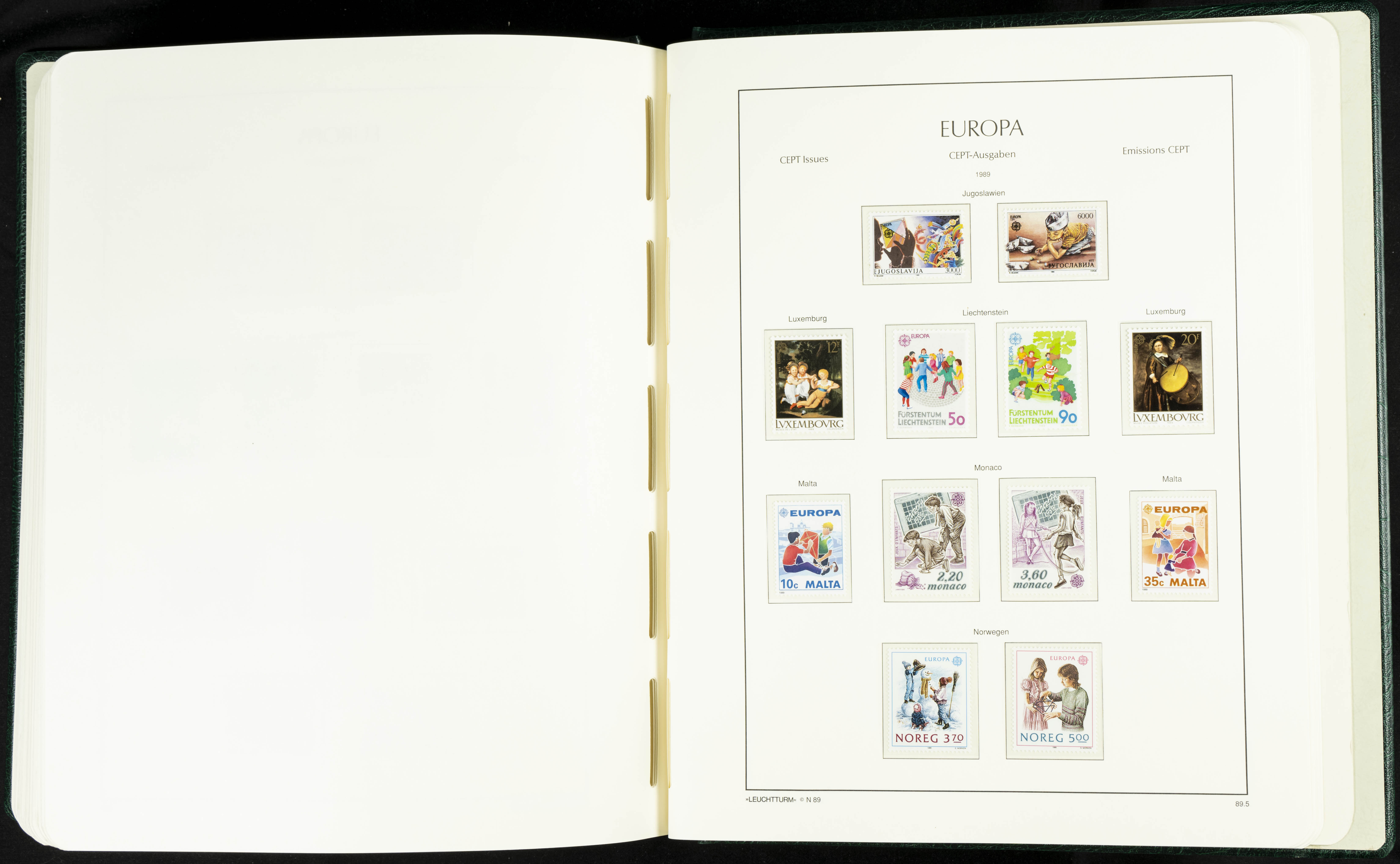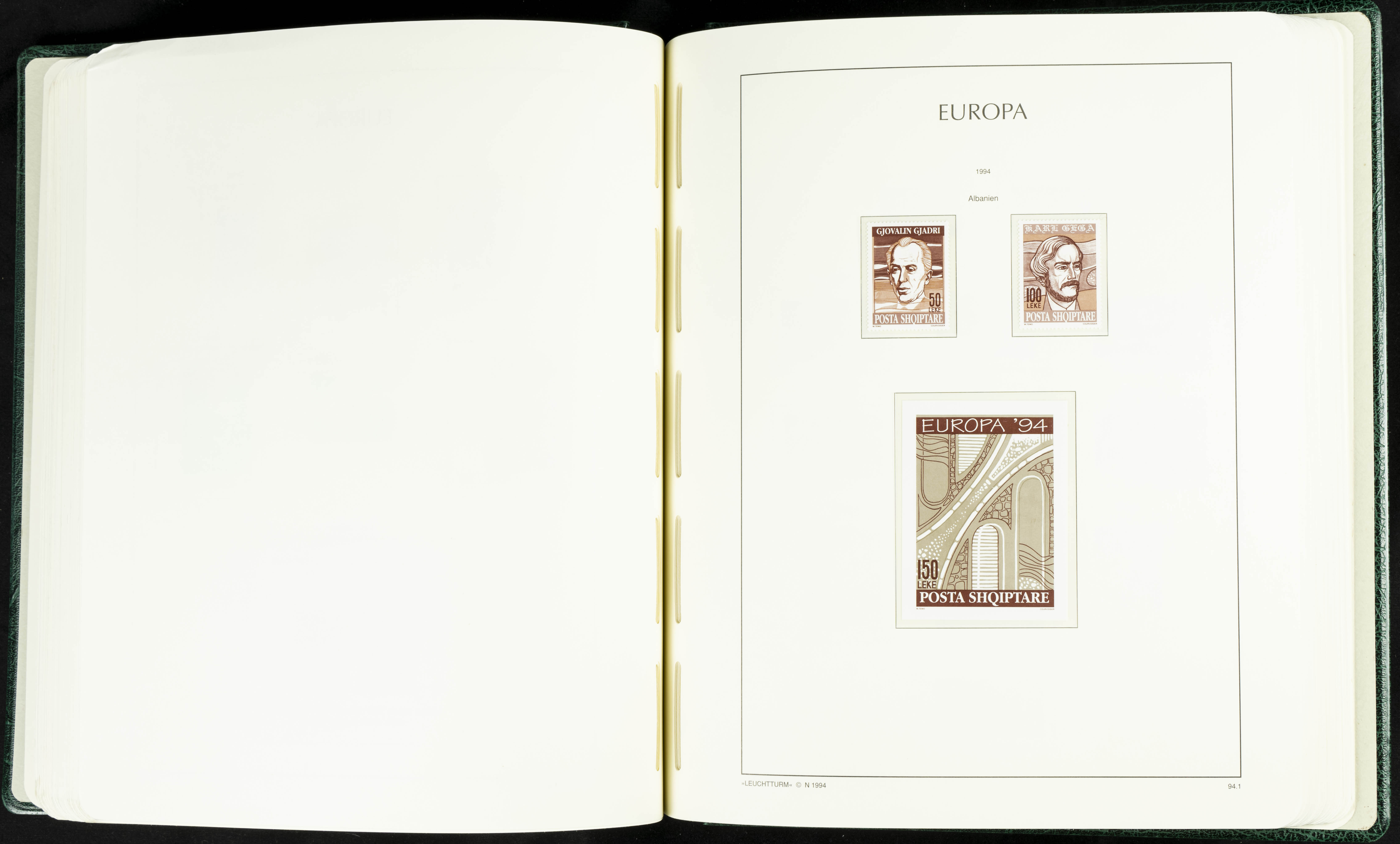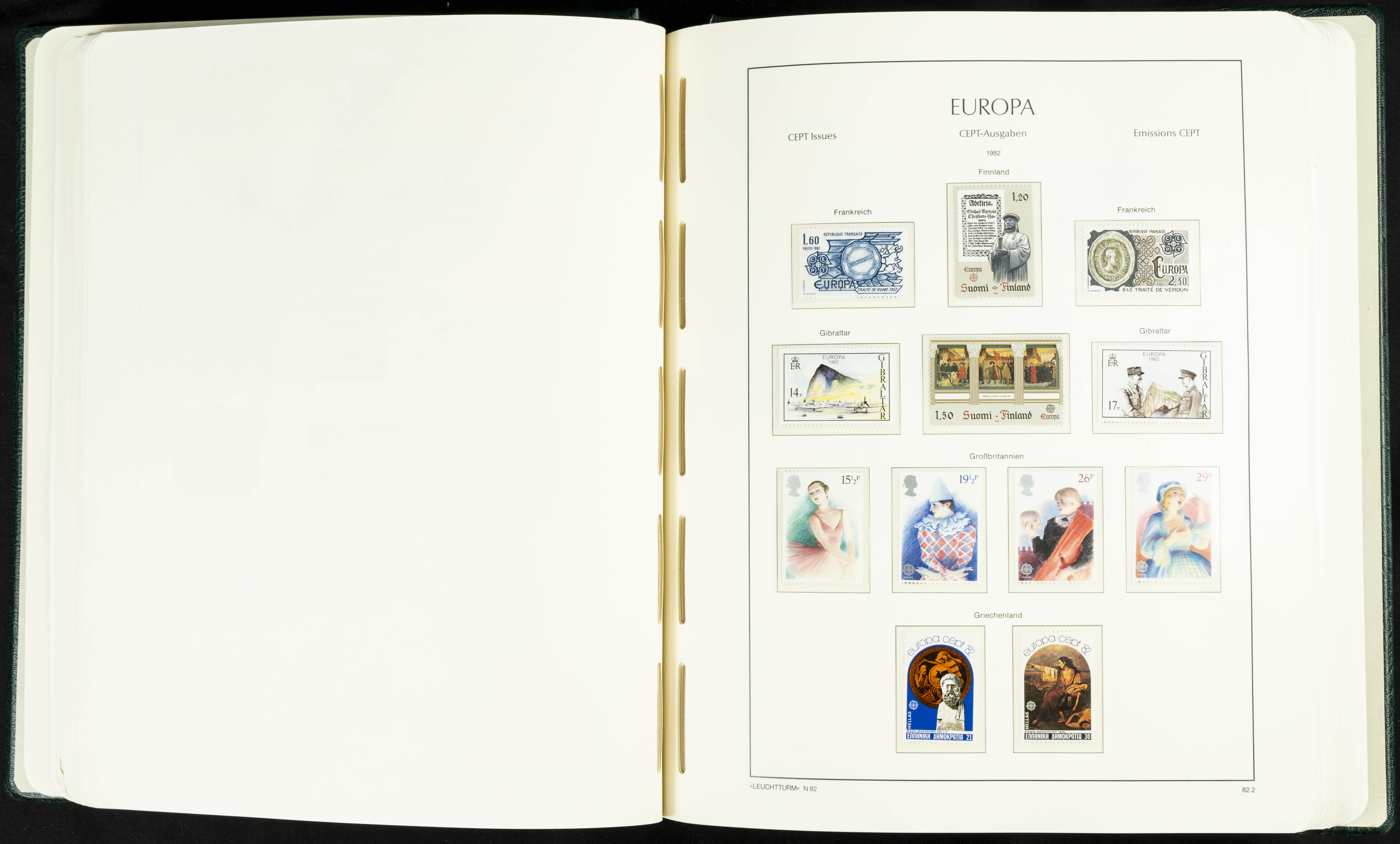 ★★/★(1949ca). Interesante y prácticamente completa colección del Tema Europa y Europeístico (excepto dos series de Italia y Trieste) entre 1949 y 1998, en nuevo sin fijasellos (montada en álbumes Faro). ALTISIMO VALOR DE CATALOGO. A EXAMINAR.