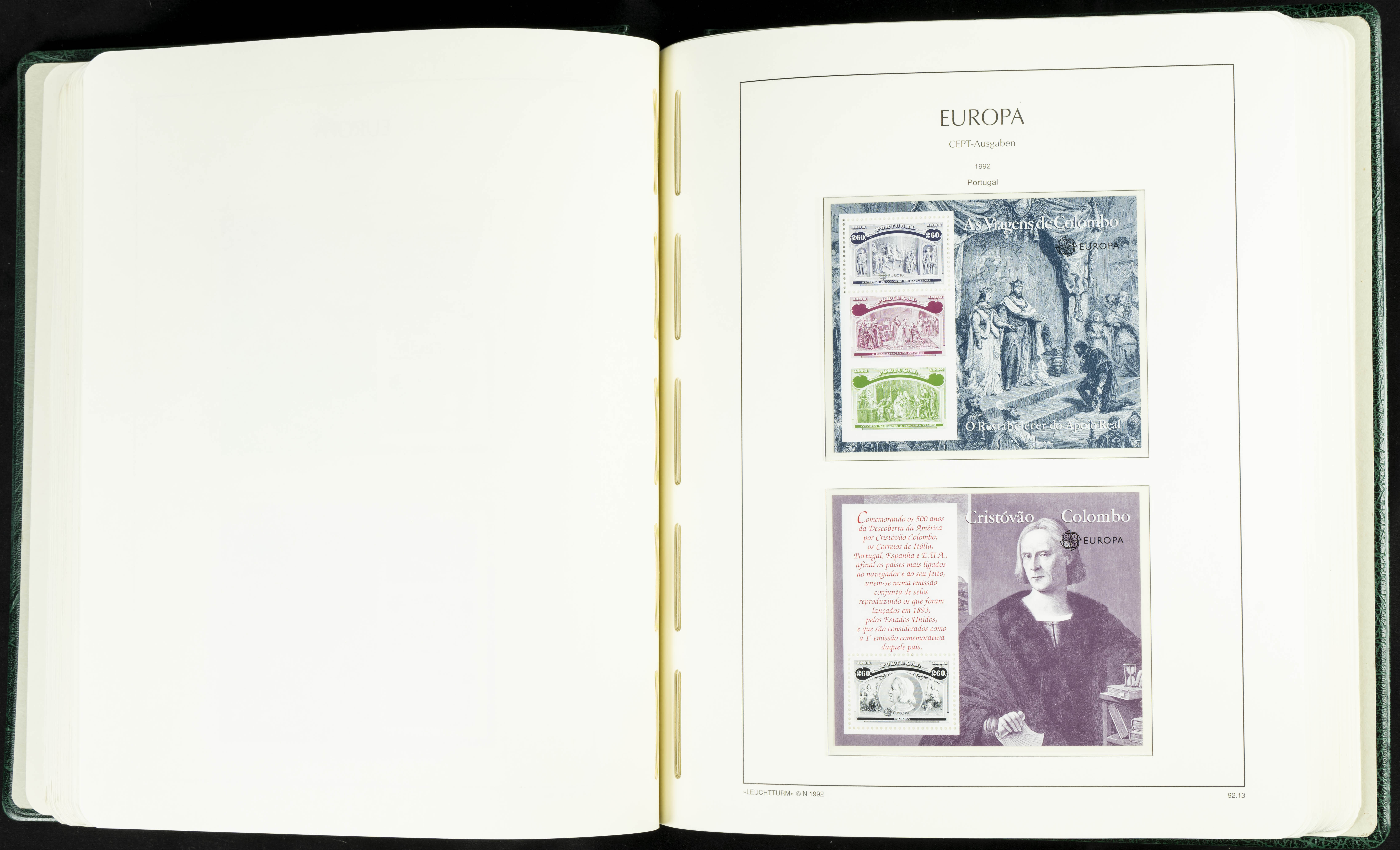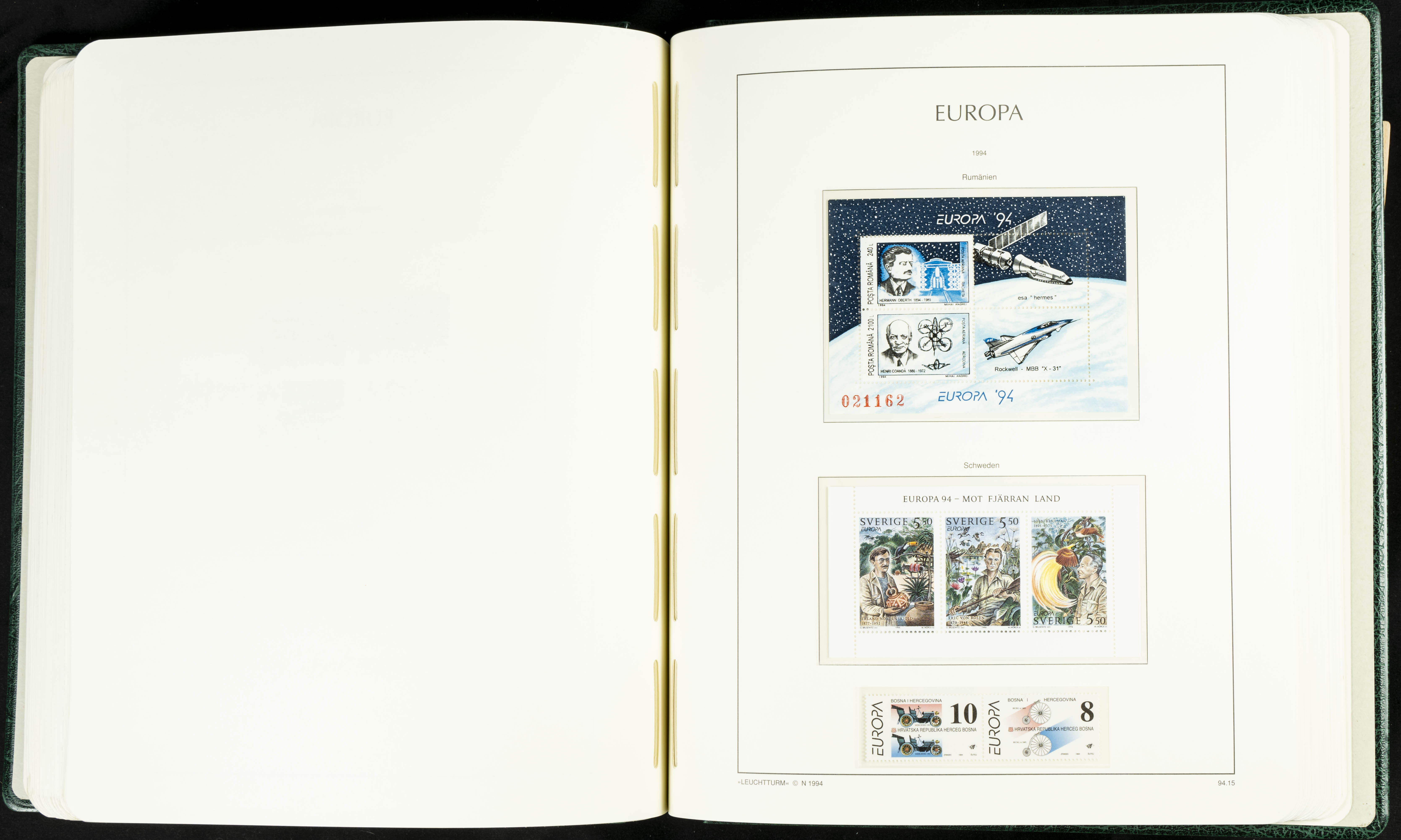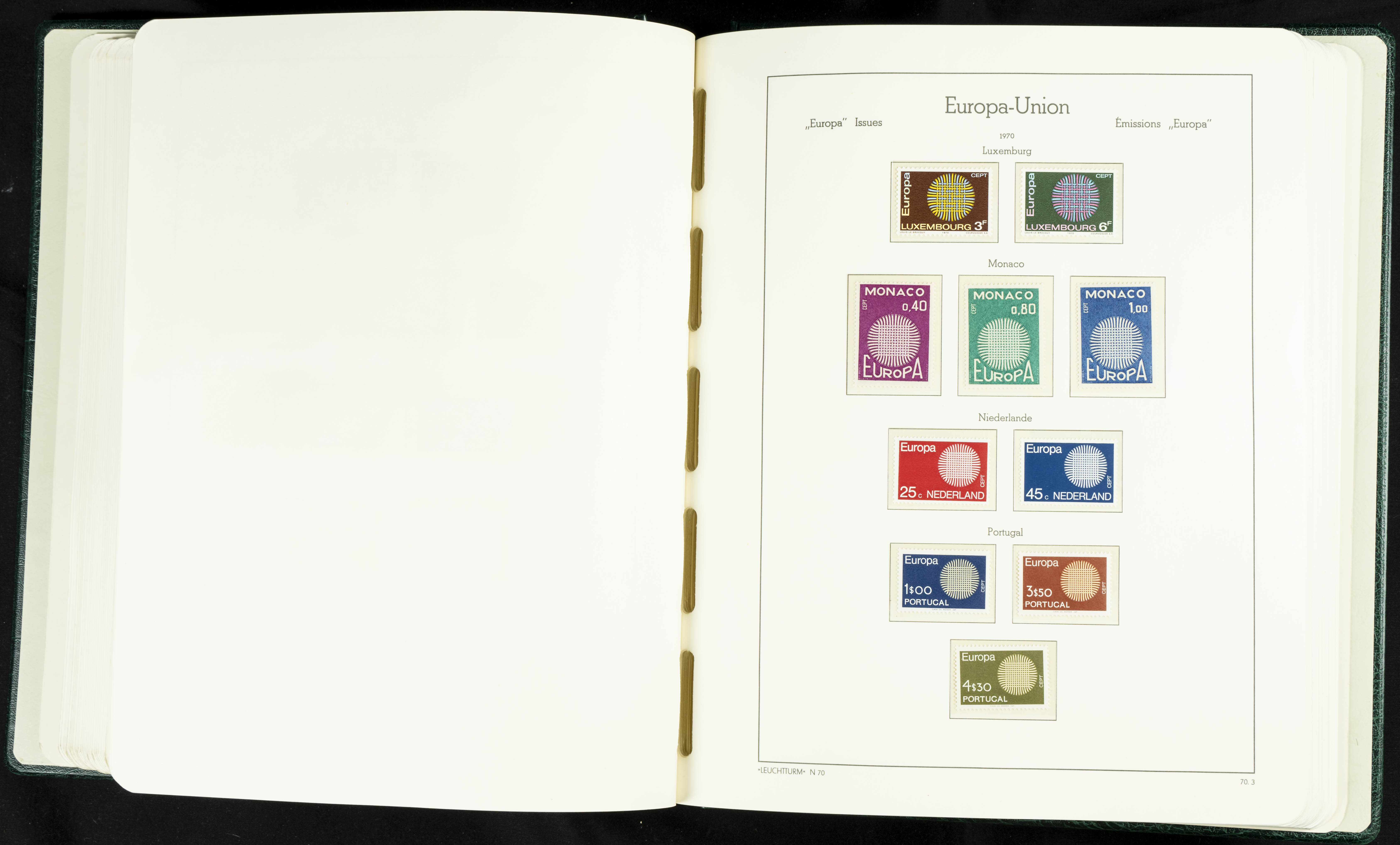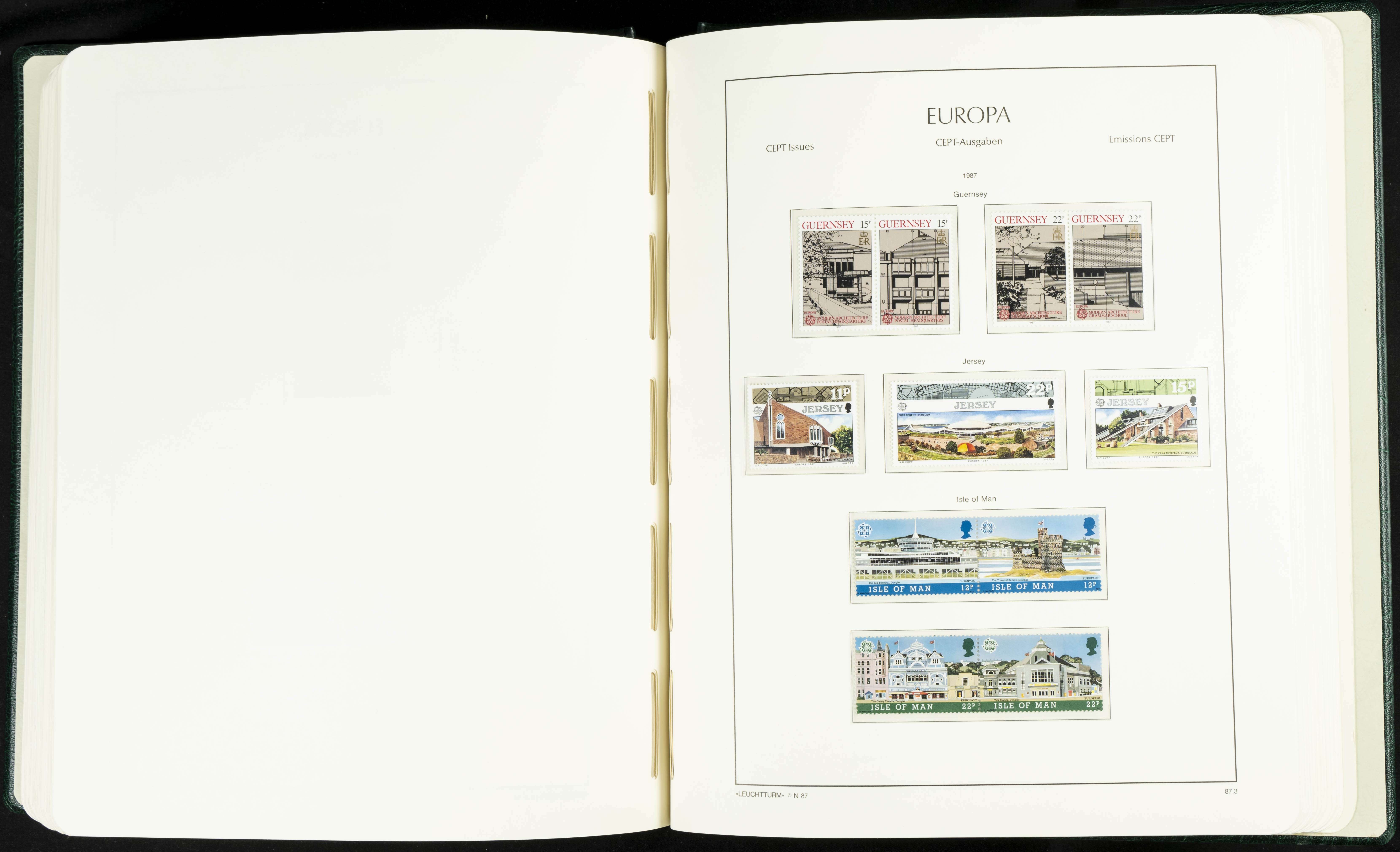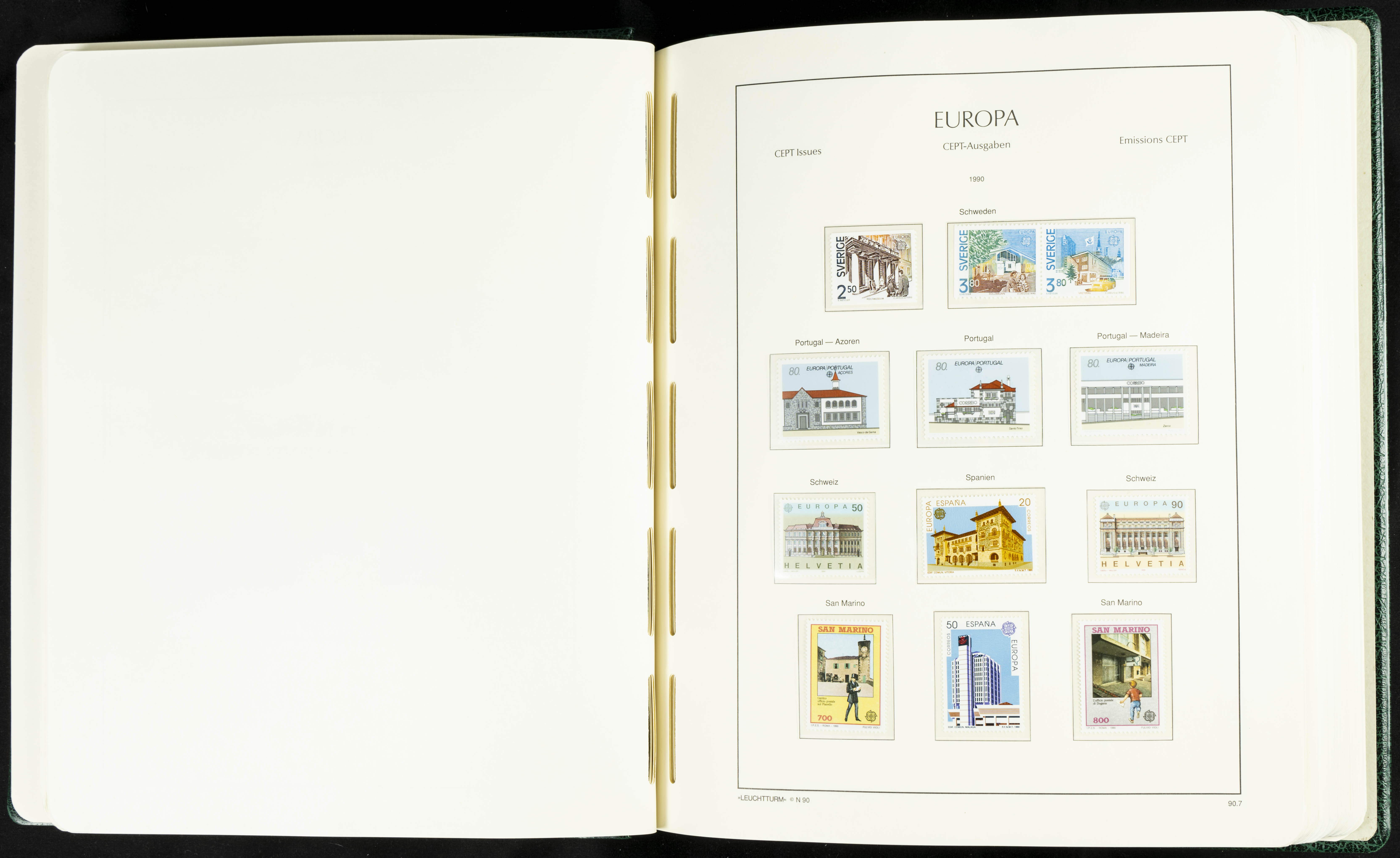 ★★/★(1949ca). Interesante y prácticamente completa colección del Tema Europa y Europeístico (excepto dos series de Italia y Trieste) entre 1949 y 1998, en nuevo sin fijasellos (montada en álbumes Faro). ALTISIMO VALOR DE CATALOGO. A EXAMINAR.