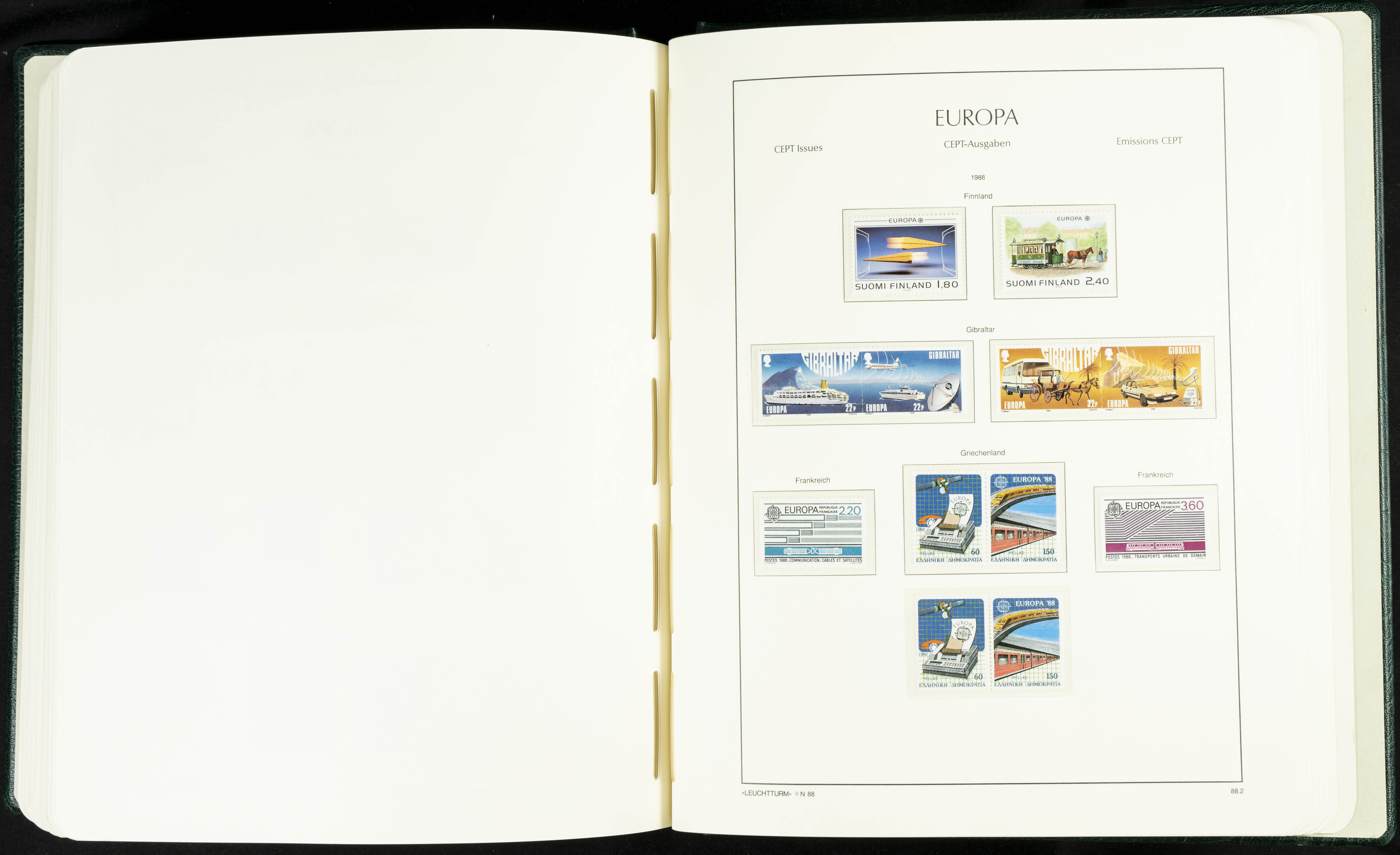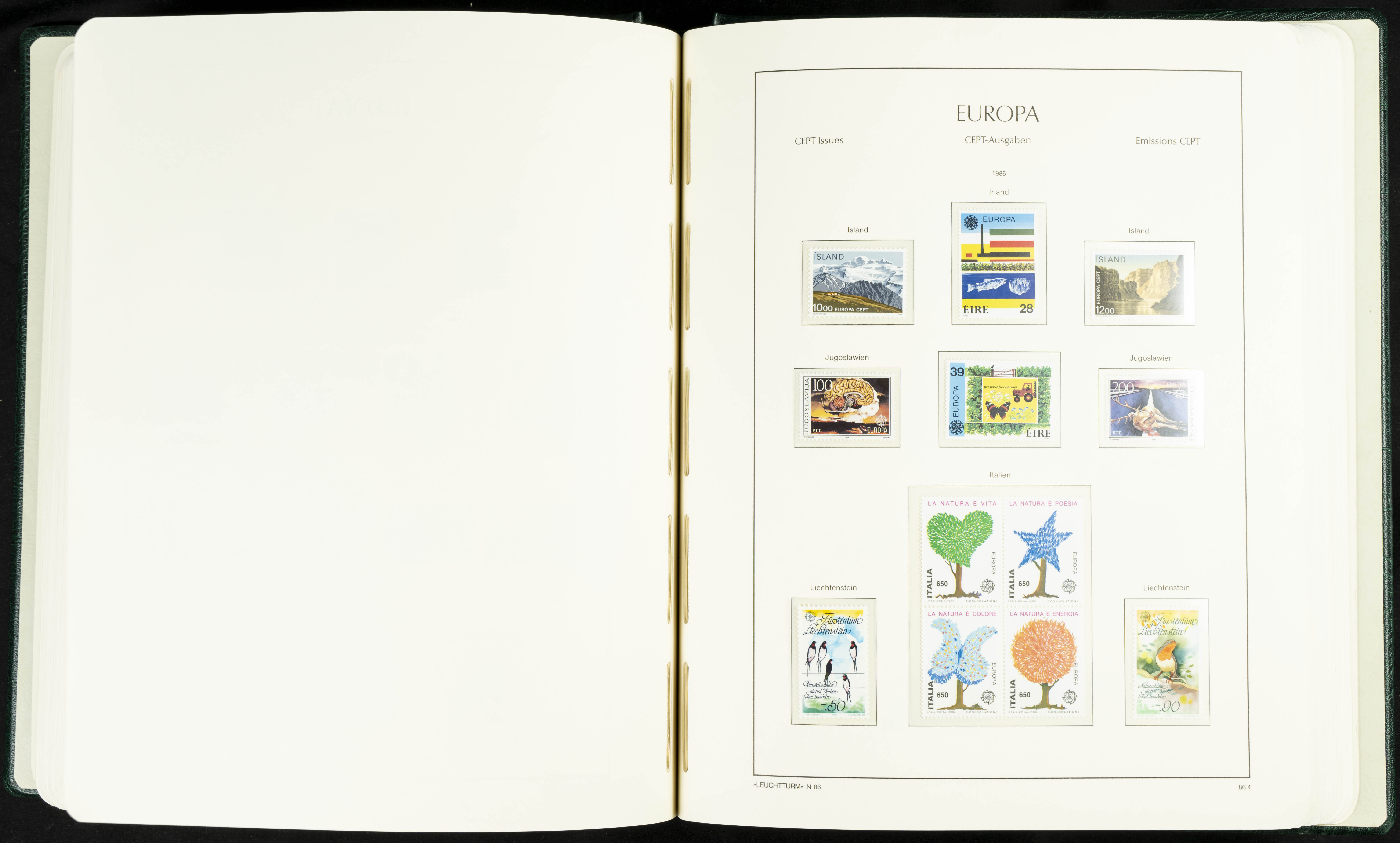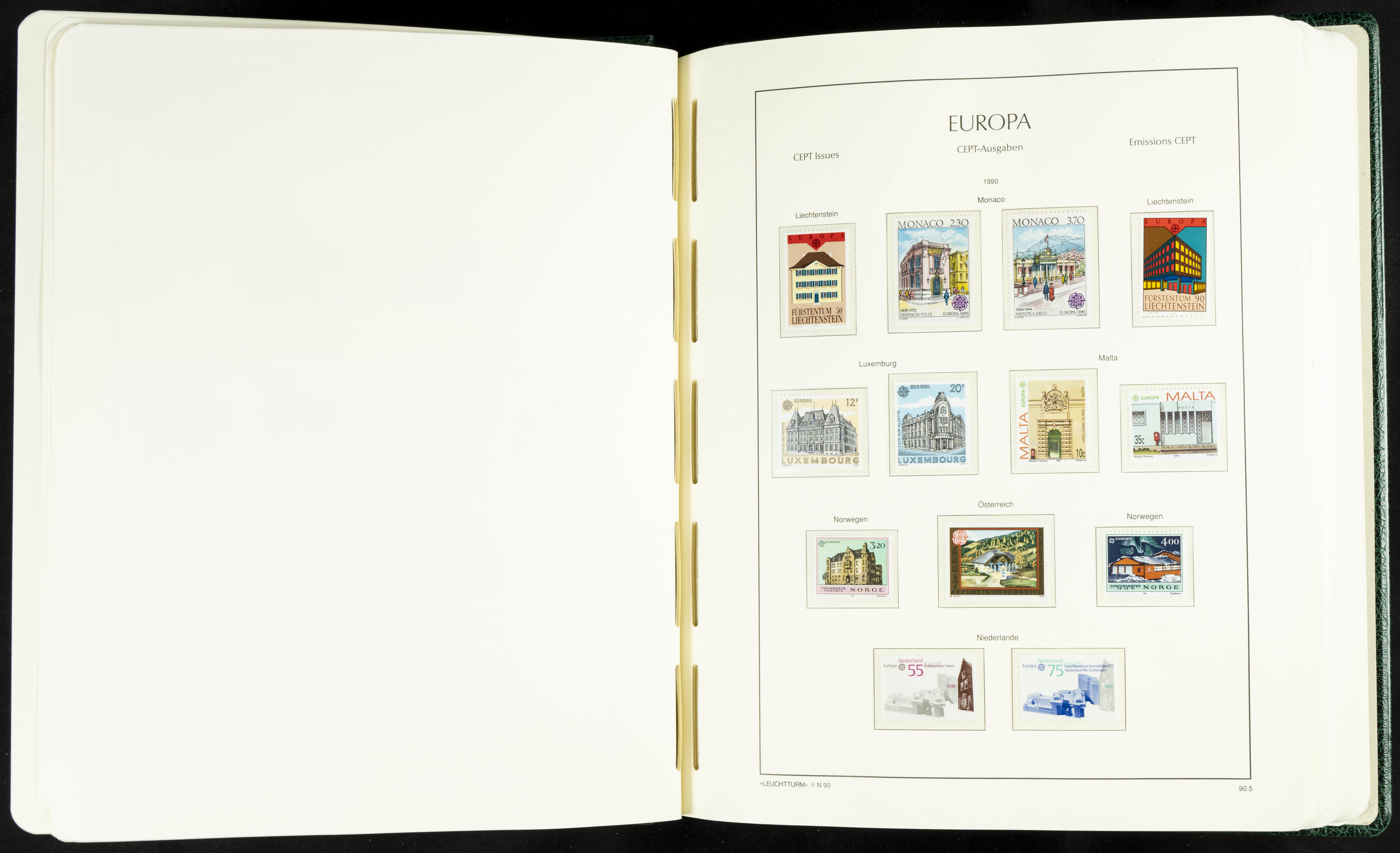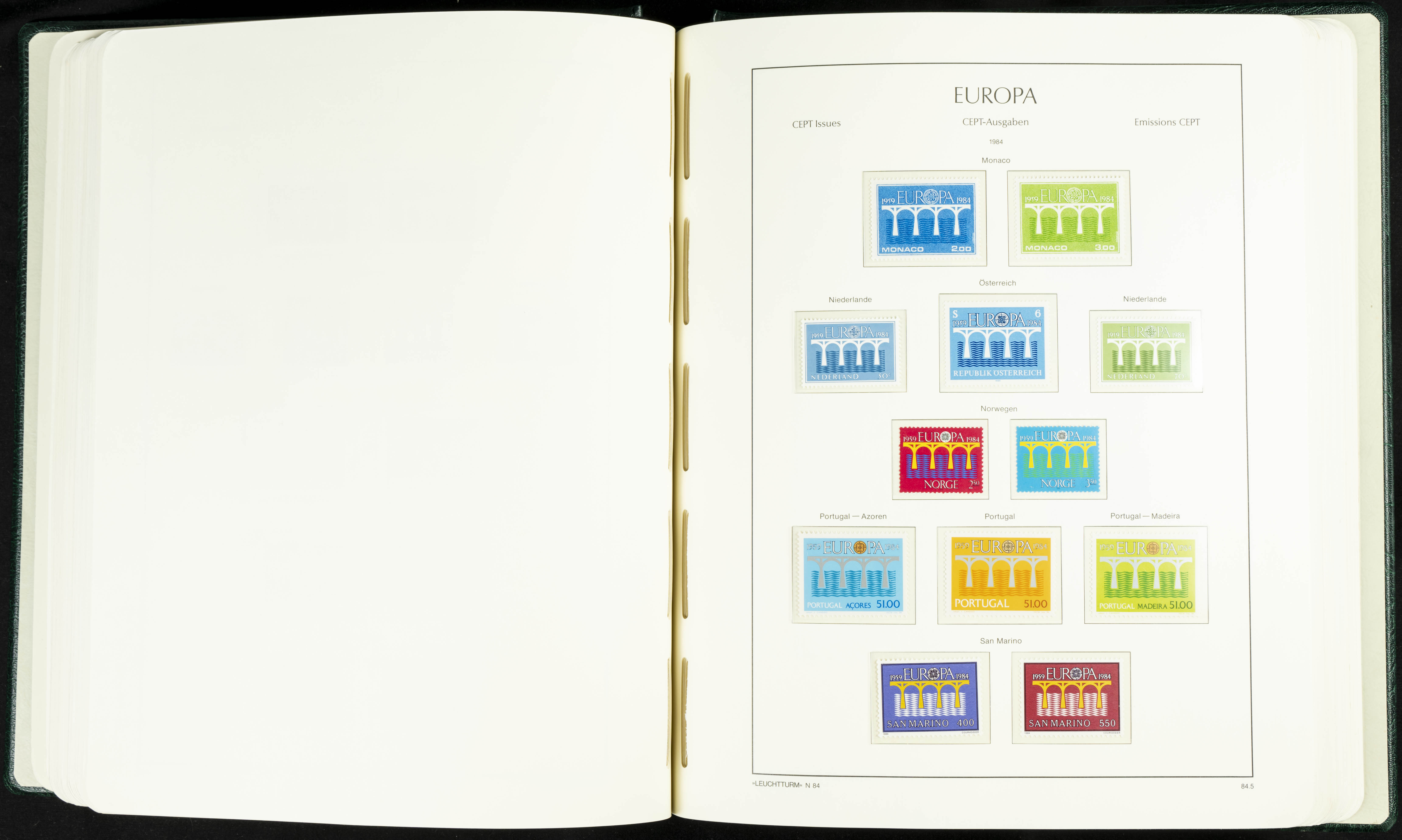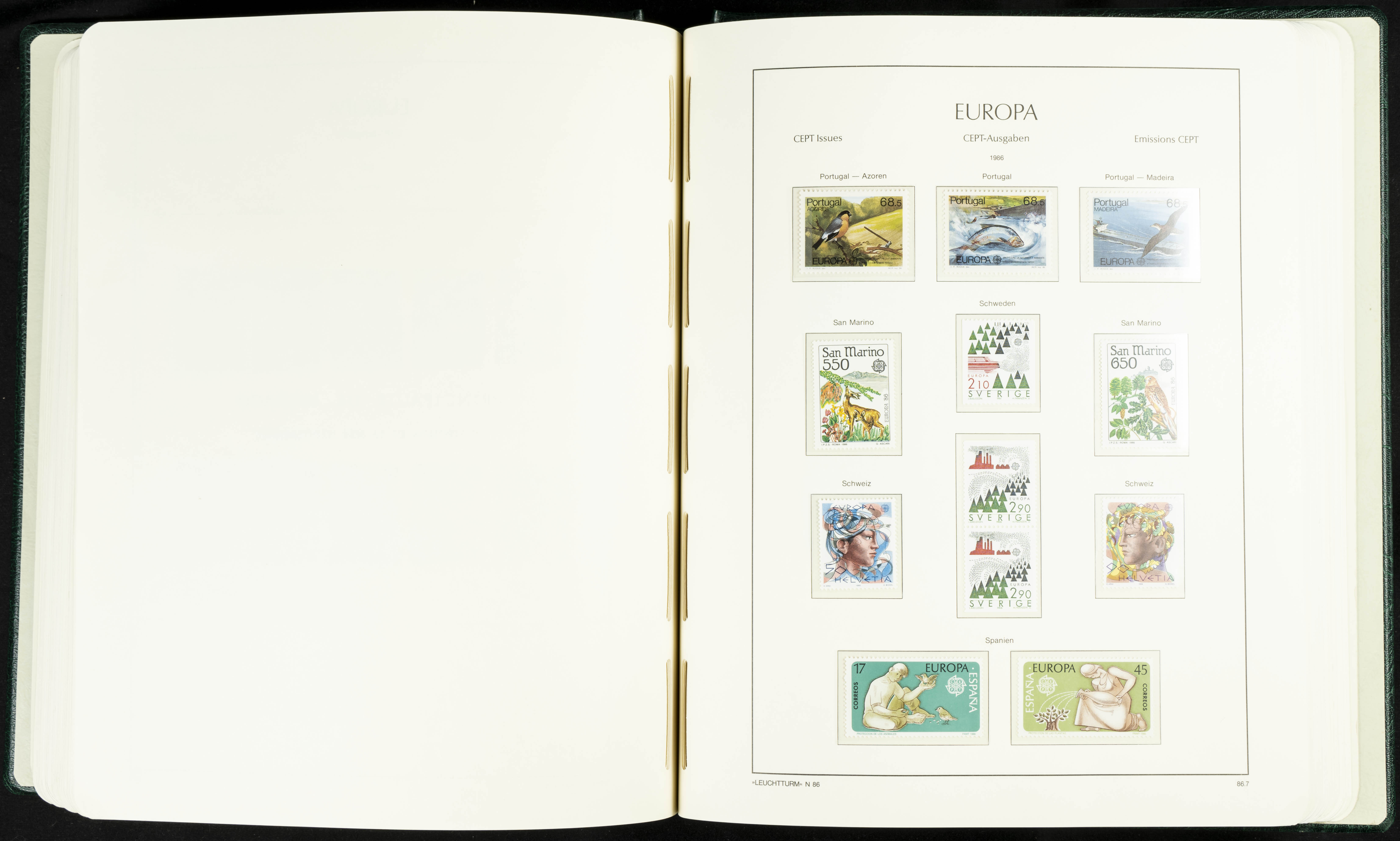 ★★/★(1949ca). Interesante y prácticamente completa colección del Tema Europa y Europeístico (excepto dos series de Italia y Trieste) entre 1949 y 1998, en nuevo sin fijasellos (montada en álbumes Faro). ALTISIMO VALOR DE CATALOGO. A EXAMINAR.