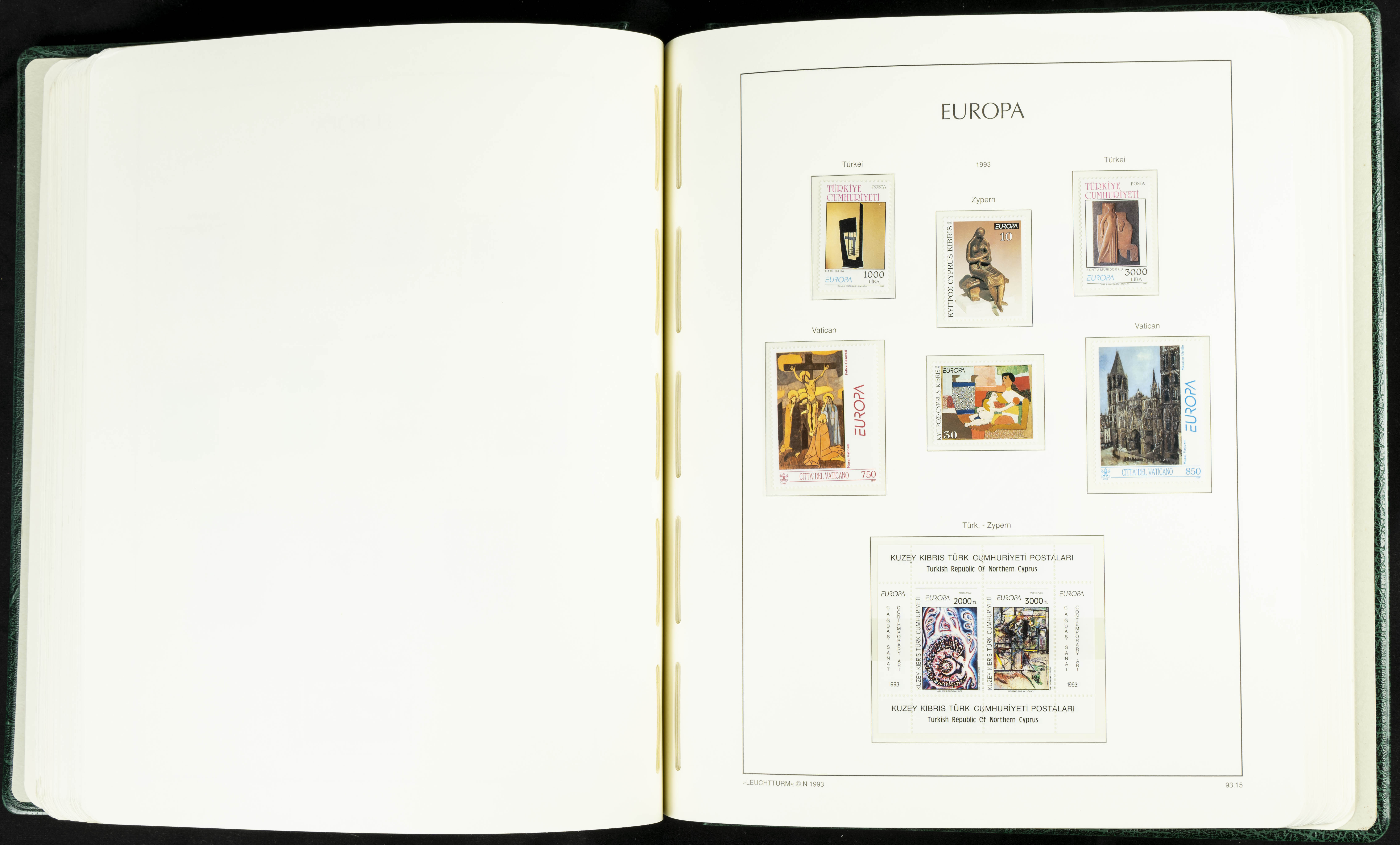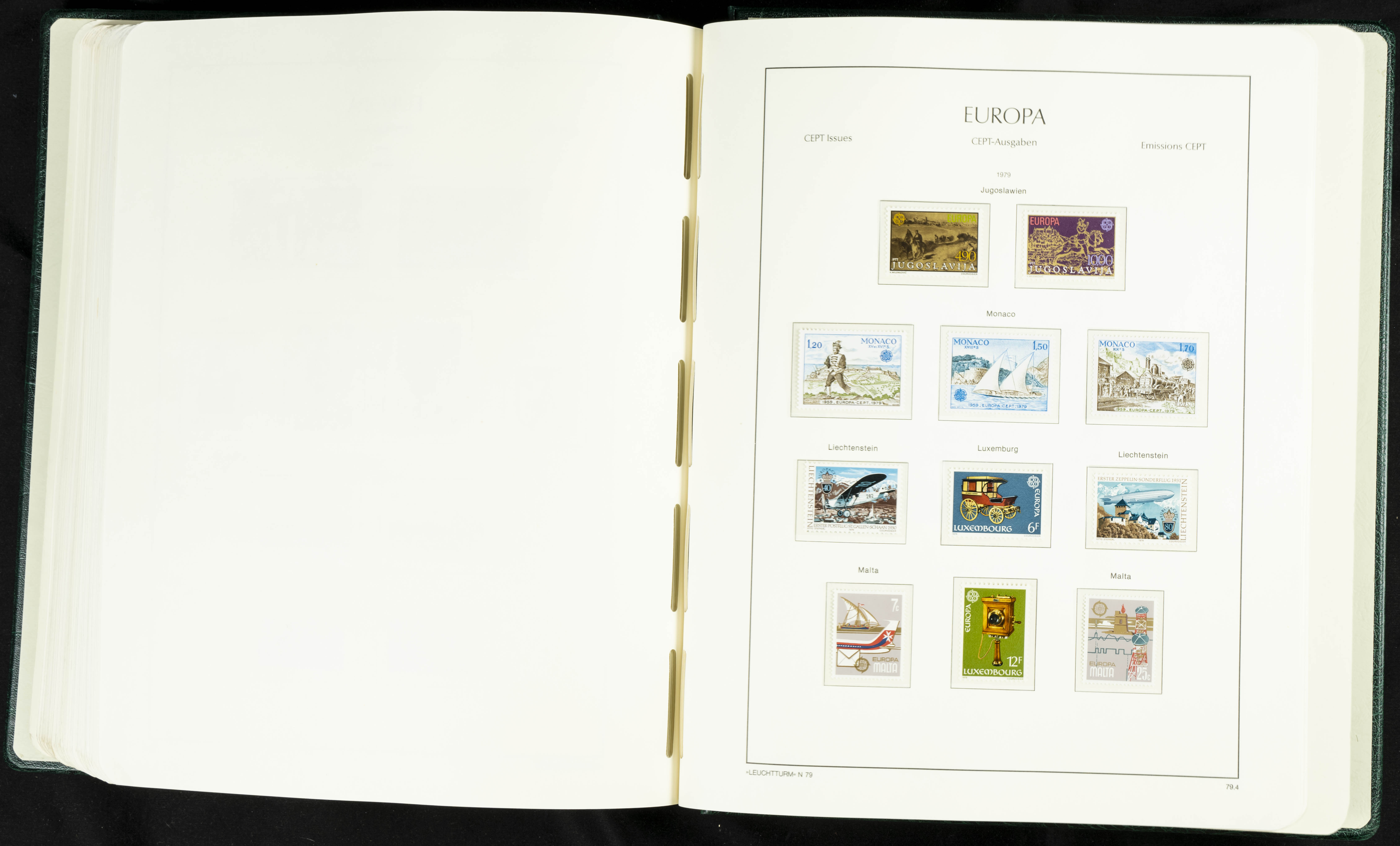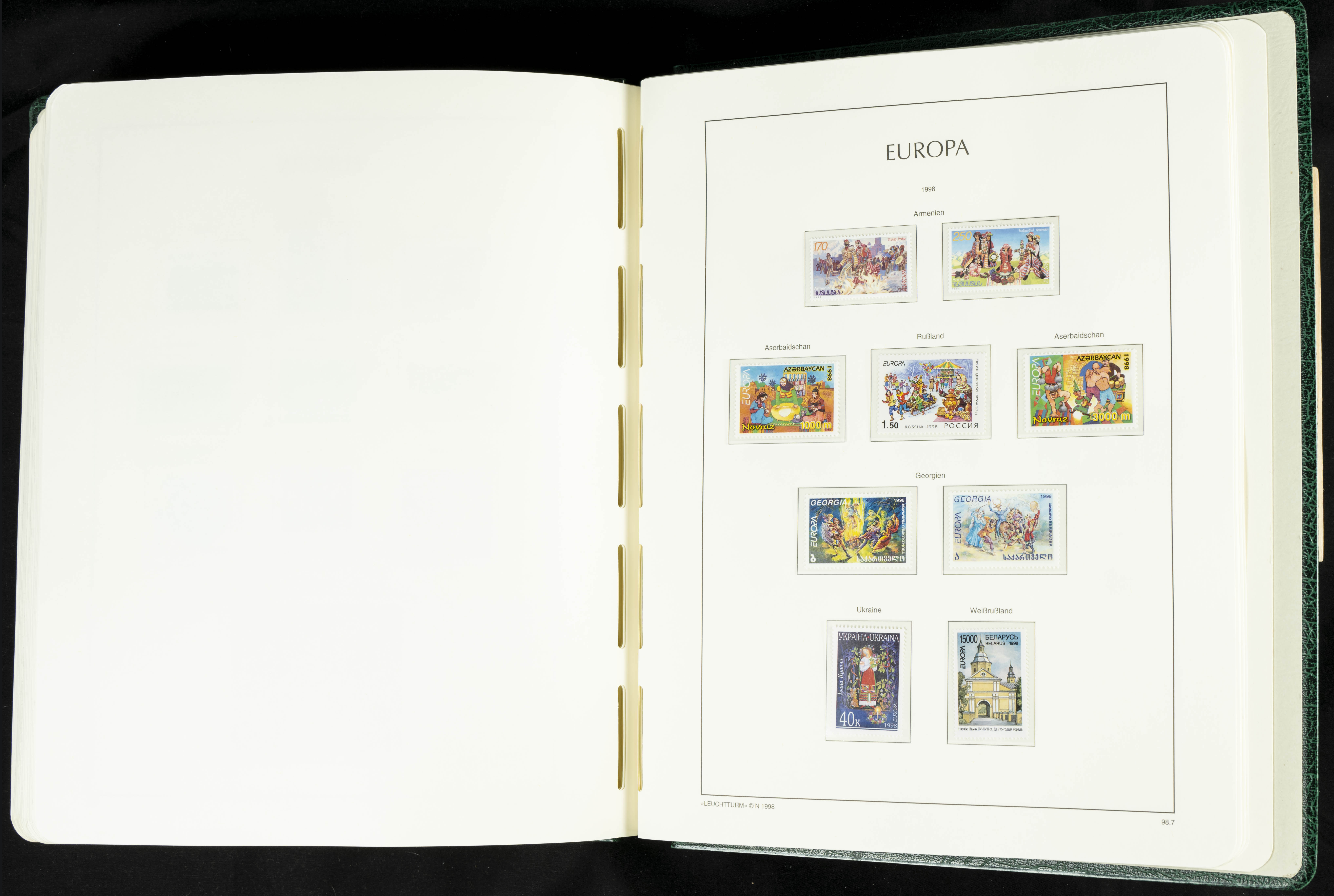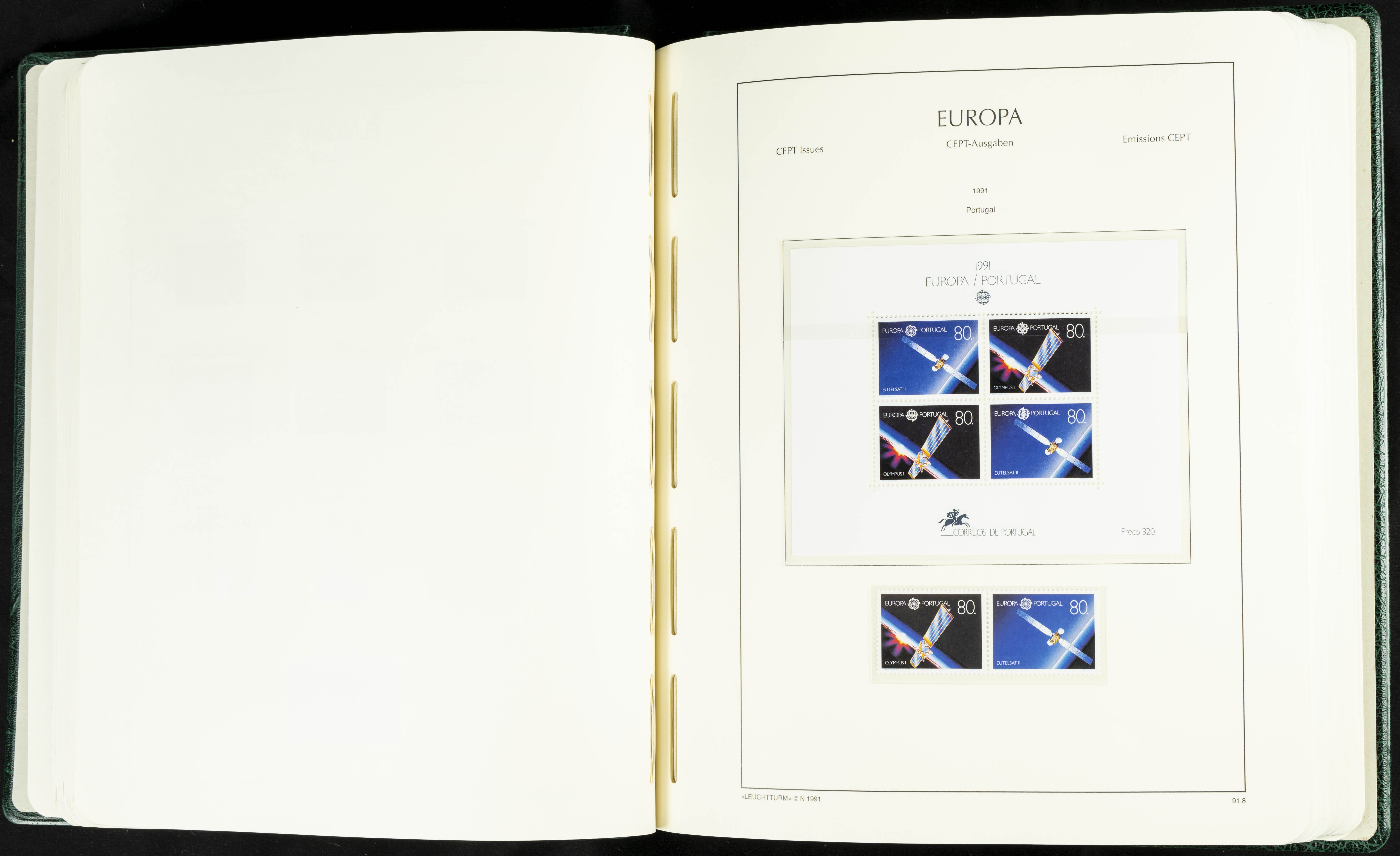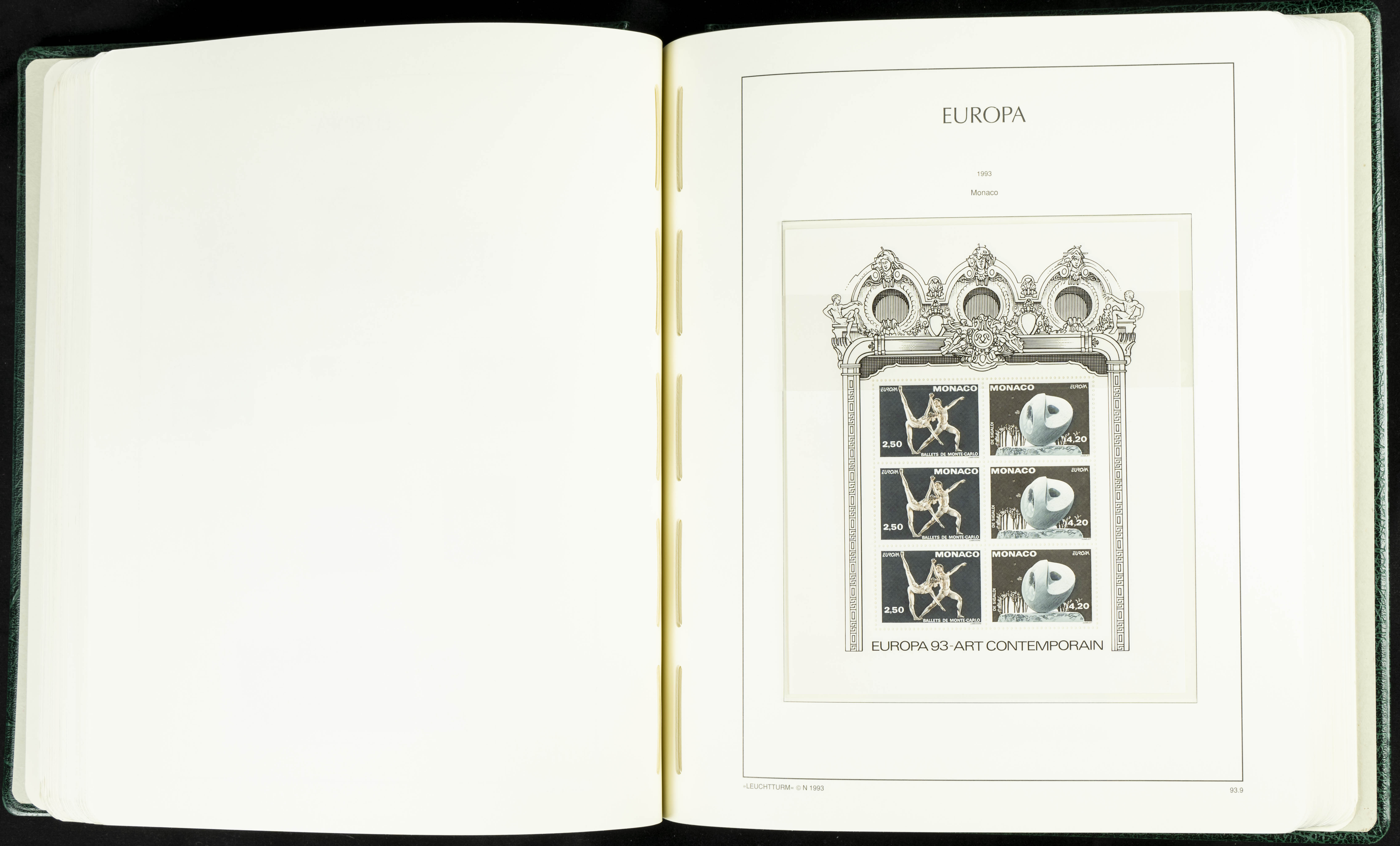 ★★/★(1949ca). Interesante y prácticamente completa colección del Tema Europa y Europeístico (excepto dos series de Italia y Trieste) entre 1949 y 1998, en nuevo sin fijasellos (montada en álbumes Faro). ALTISIMO VALOR DE CATALOGO. A EXAMINAR.