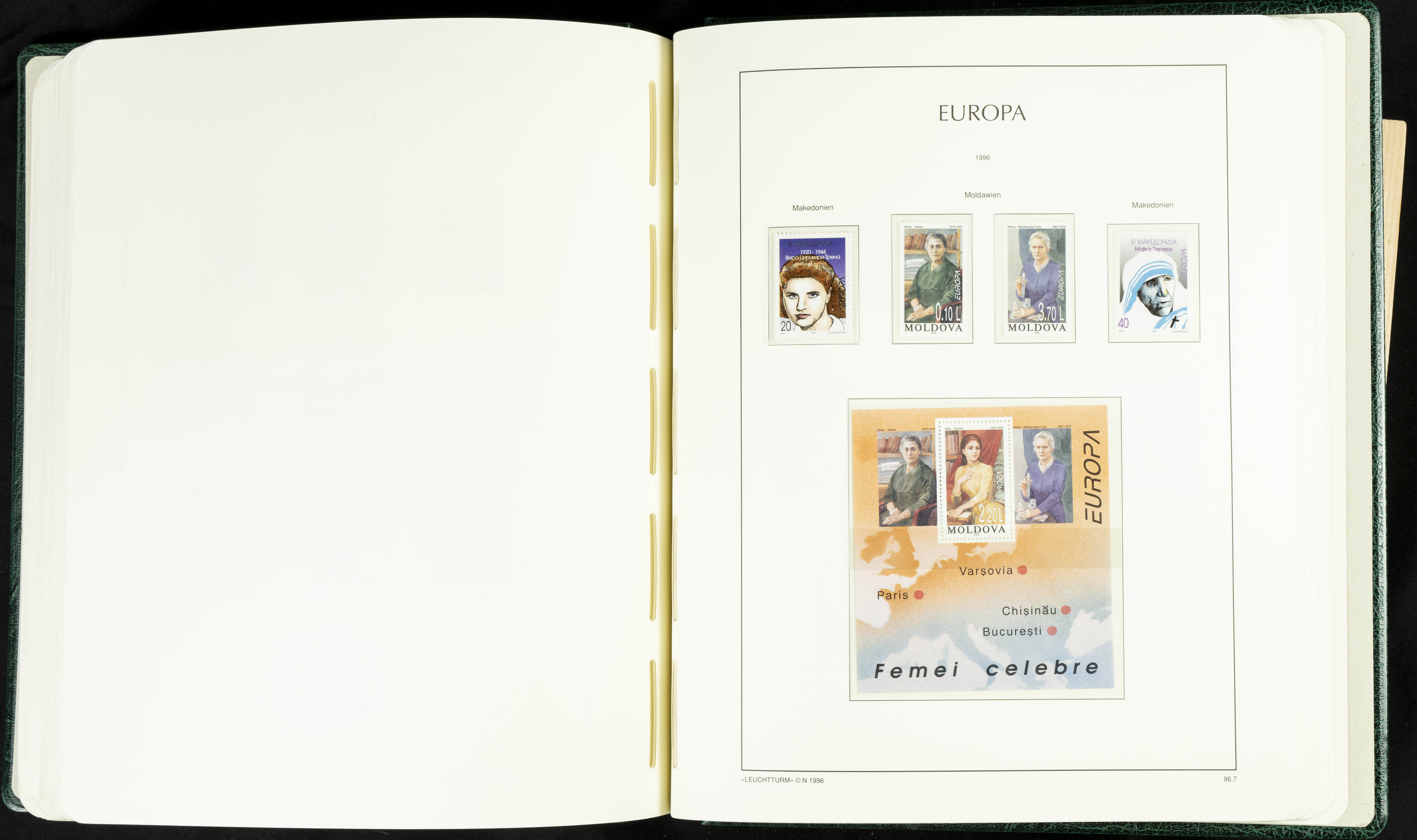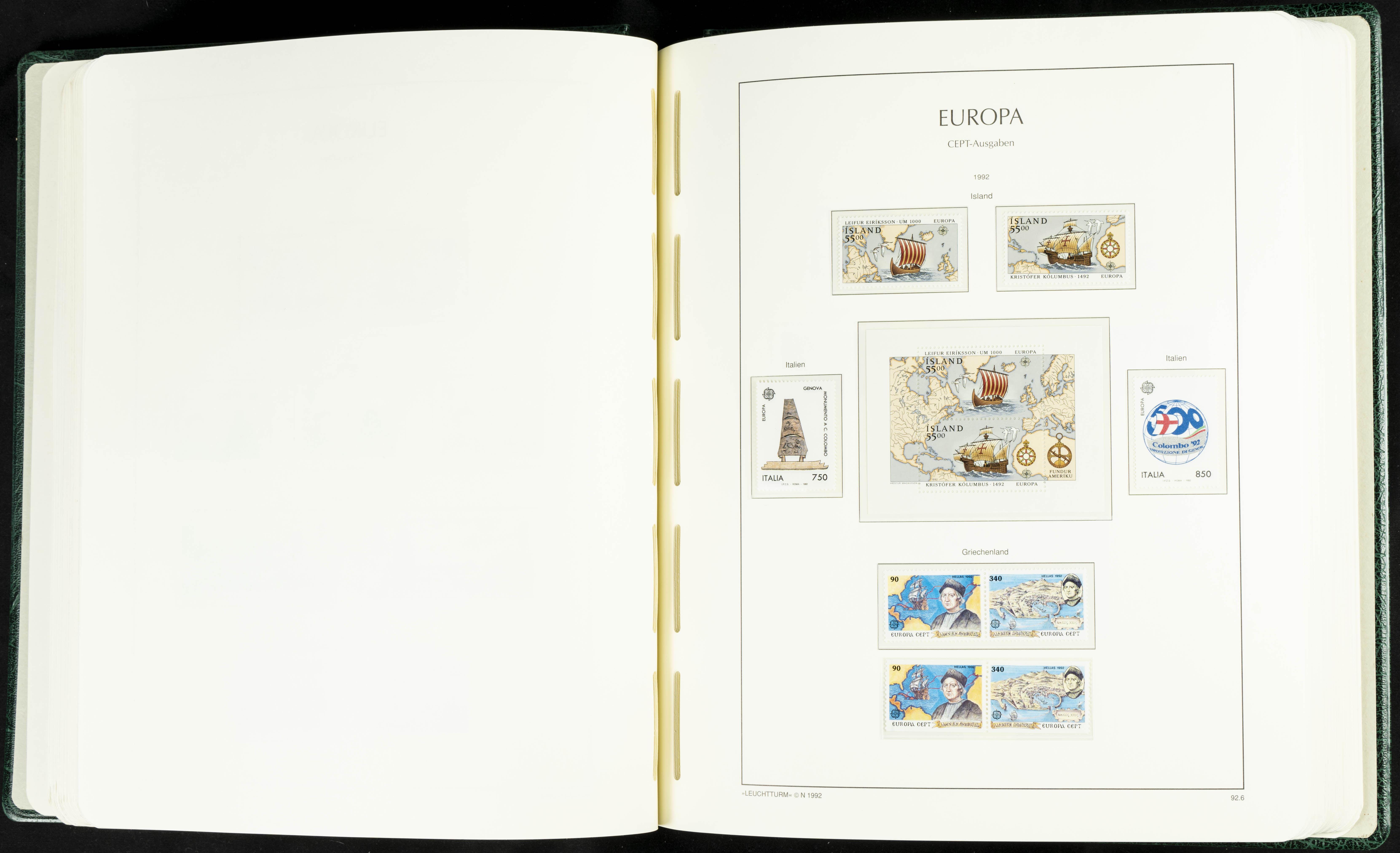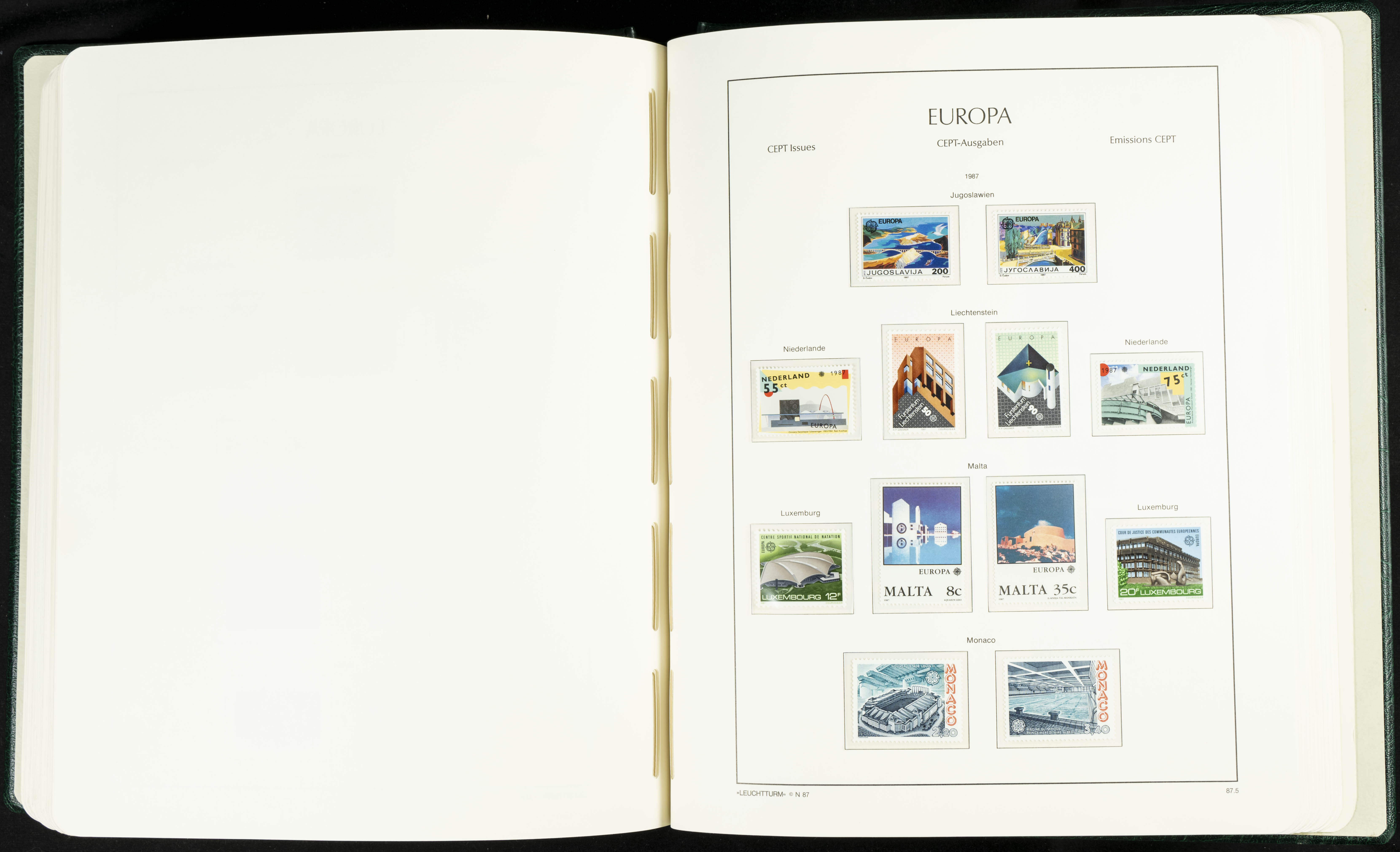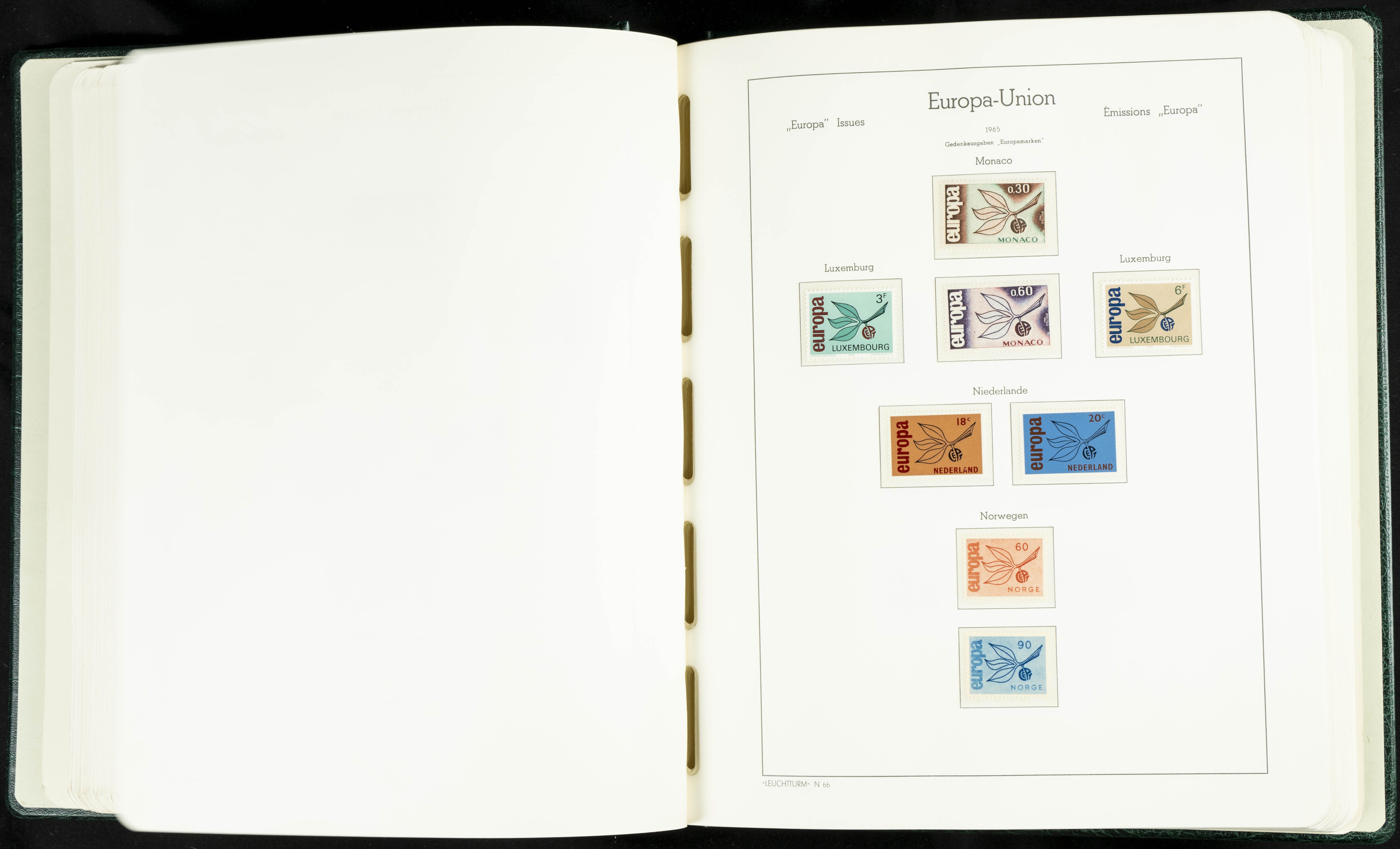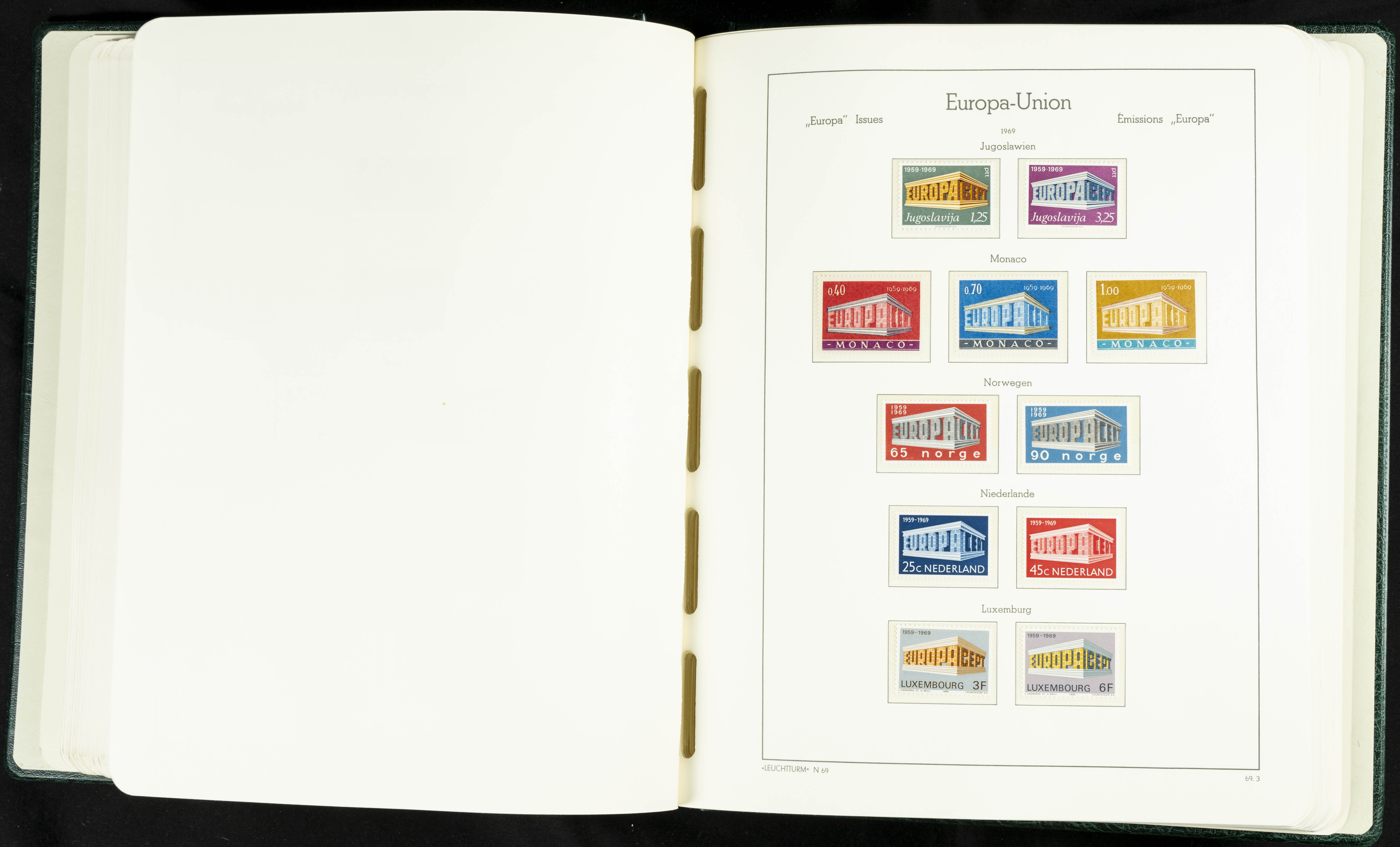 ★★/★(1949ca). Interesante y prácticamente completa colección del Tema Europa y Europeístico (excepto dos series de Italia y Trieste) entre 1949 y 1998, en nuevo sin fijasellos (montada en álbumes Faro). ALTISIMO VALOR DE CATALOGO. A EXAMINAR.