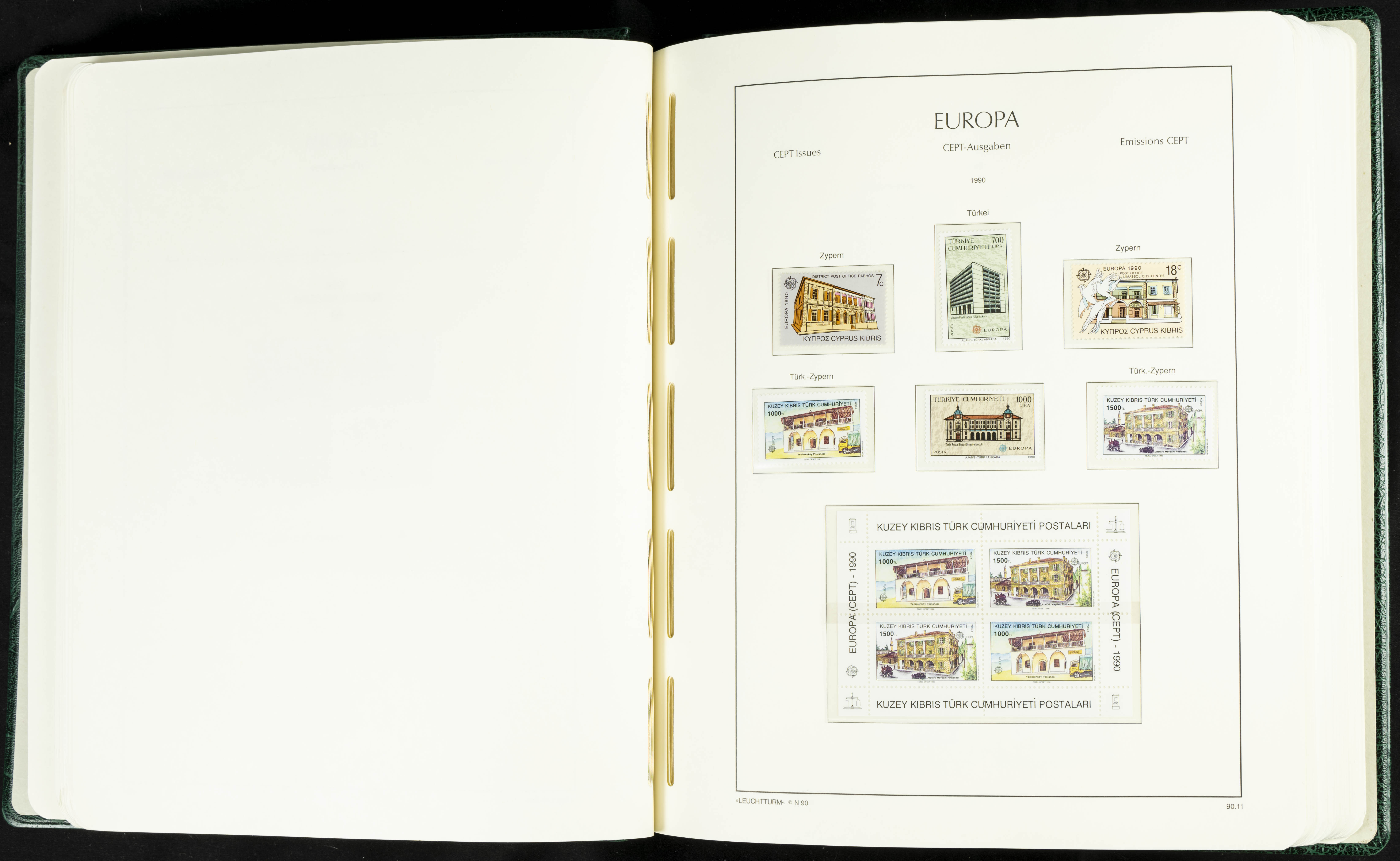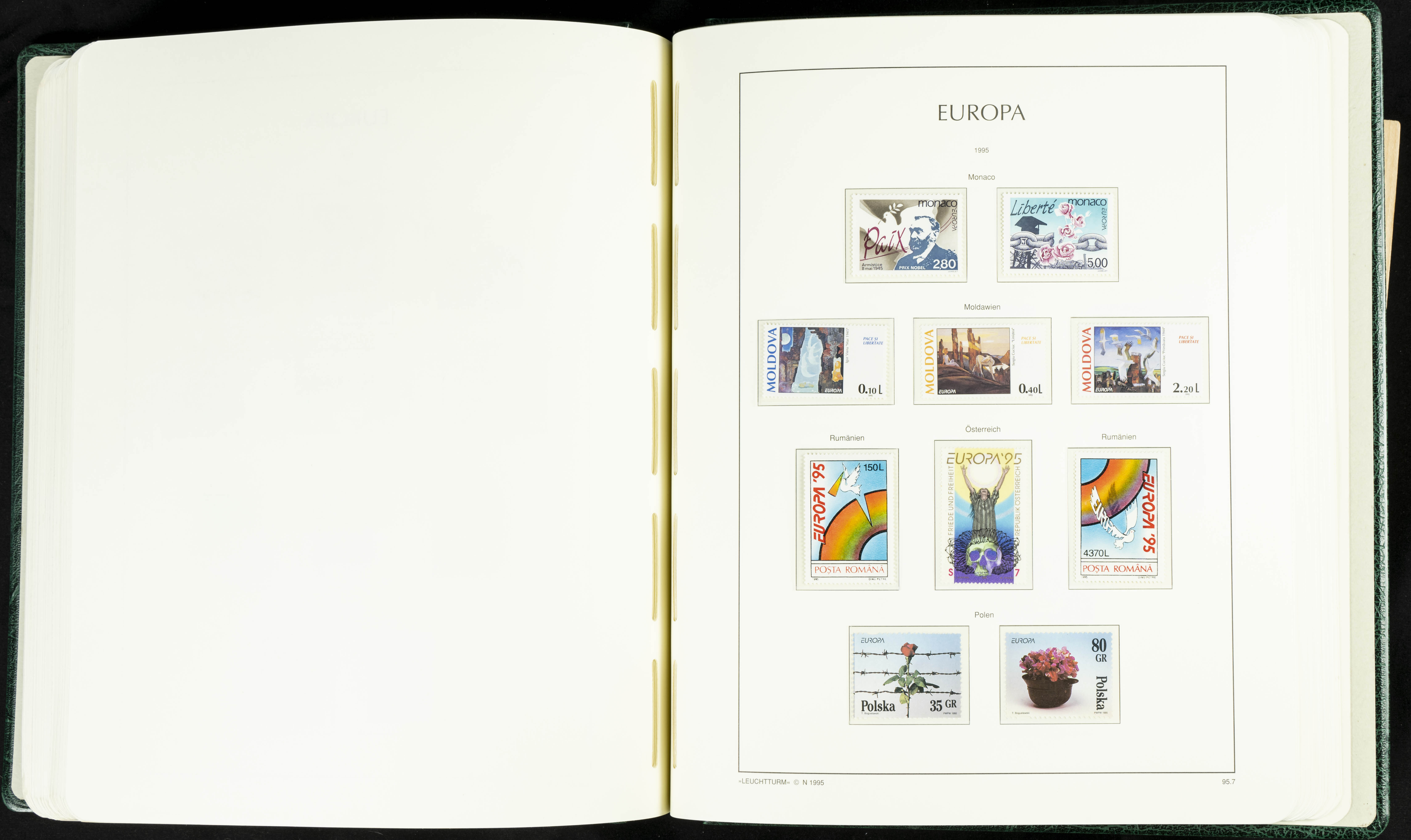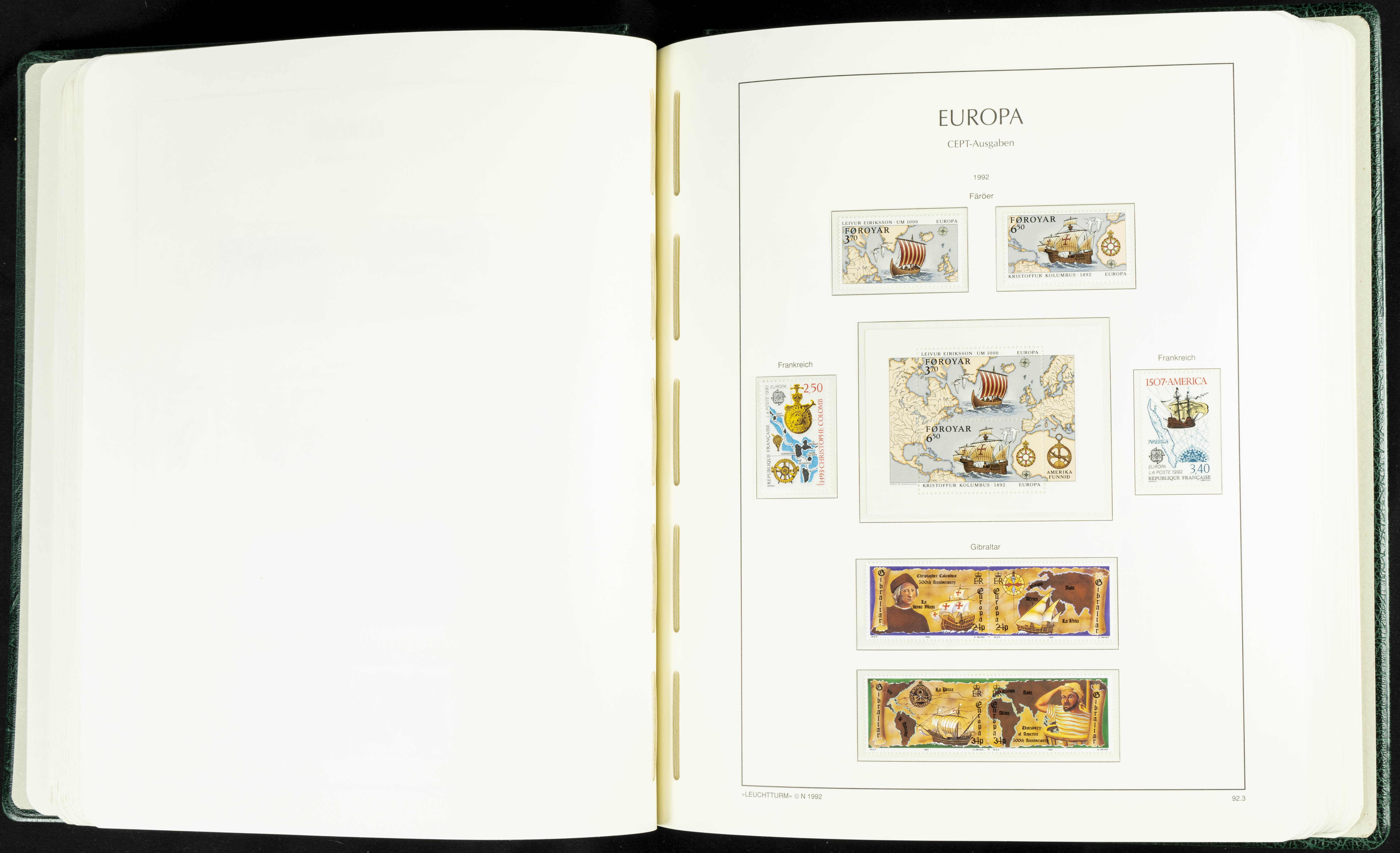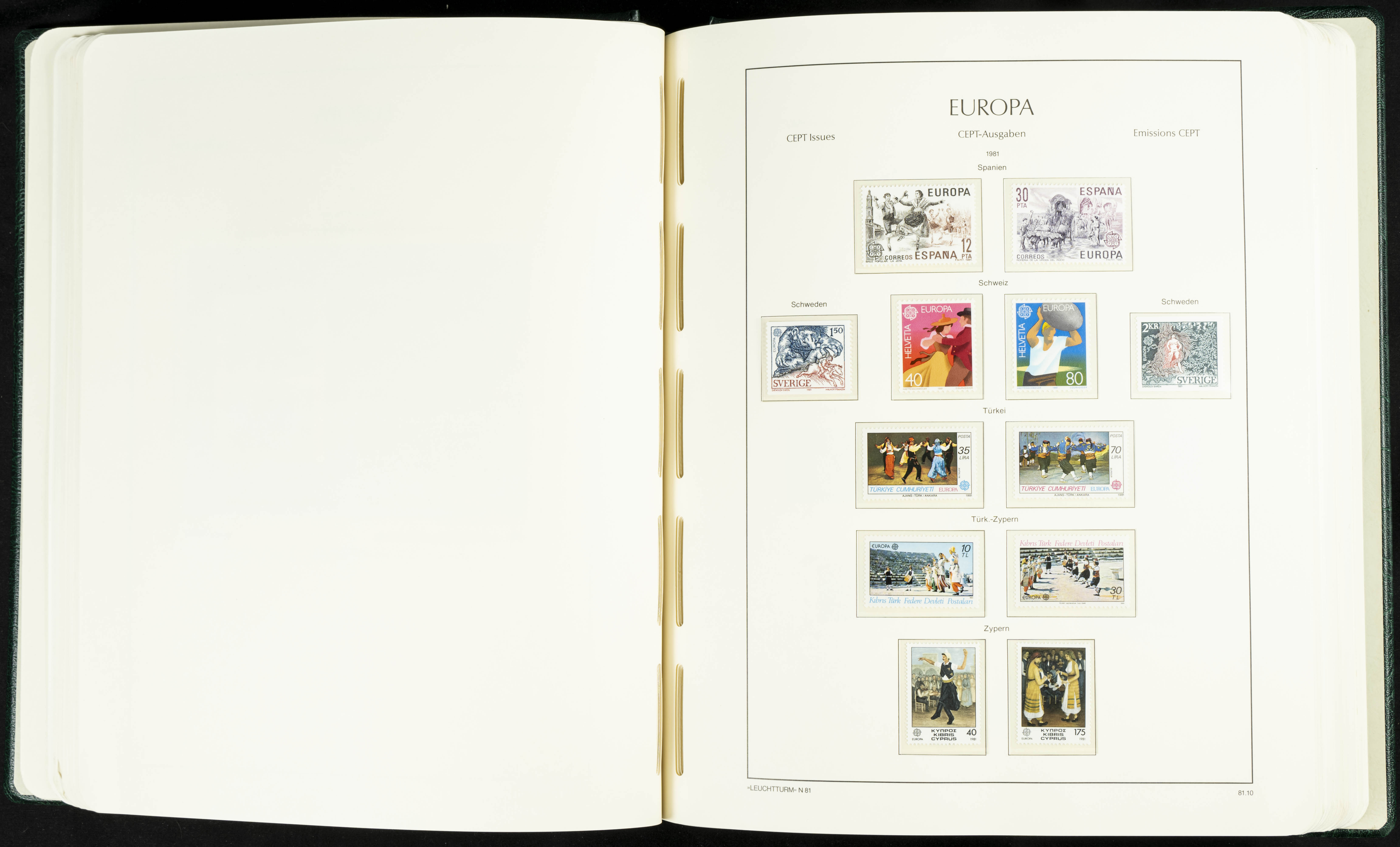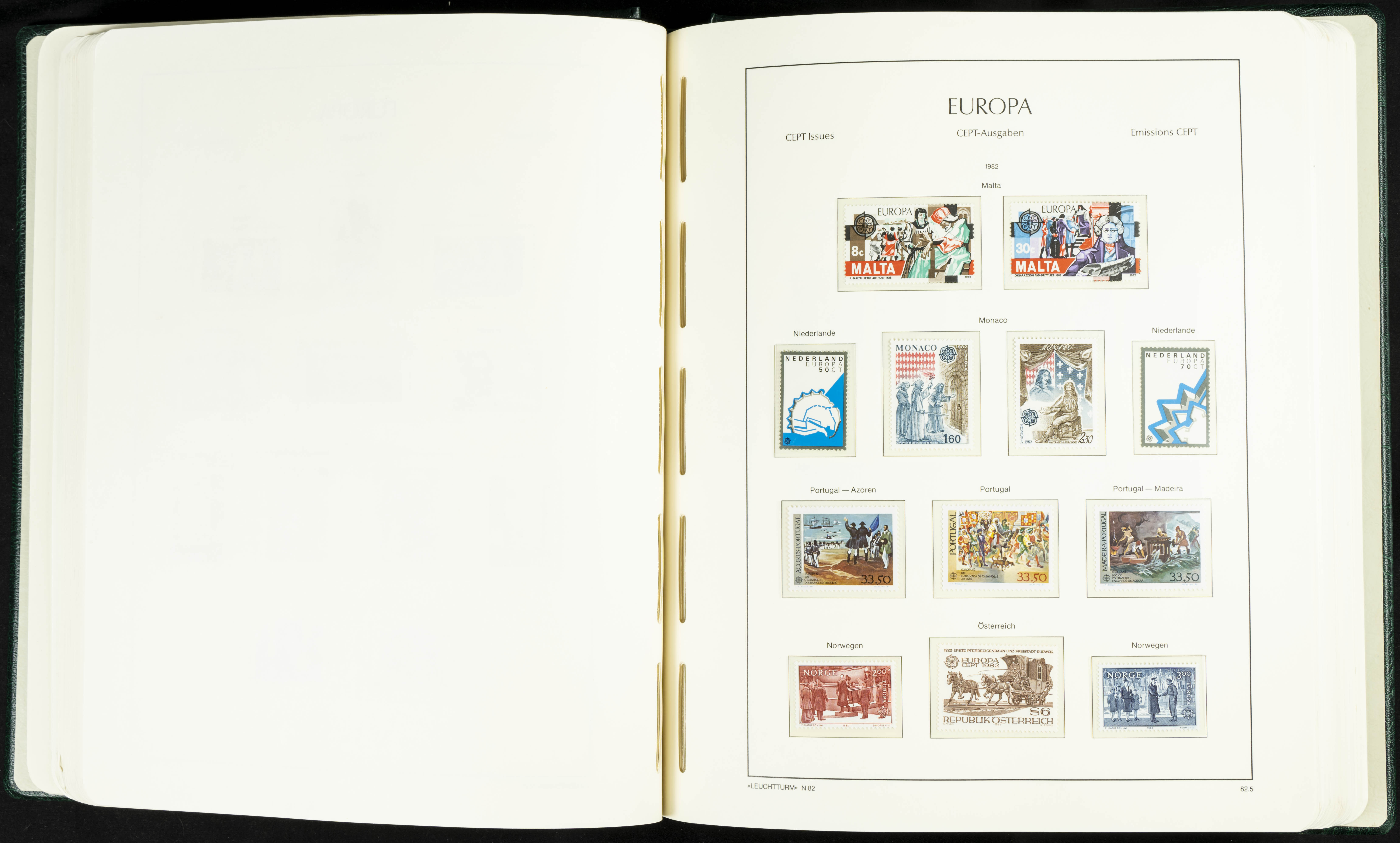 ★★/★(1949ca). Interesante y prácticamente completa colección del Tema Europa y Europeístico (excepto dos series de Italia y Trieste) entre 1949 y 1998, en nuevo sin fijasellos (montada en álbumes Faro). ALTISIMO VALOR DE CATALOGO. A EXAMINAR.