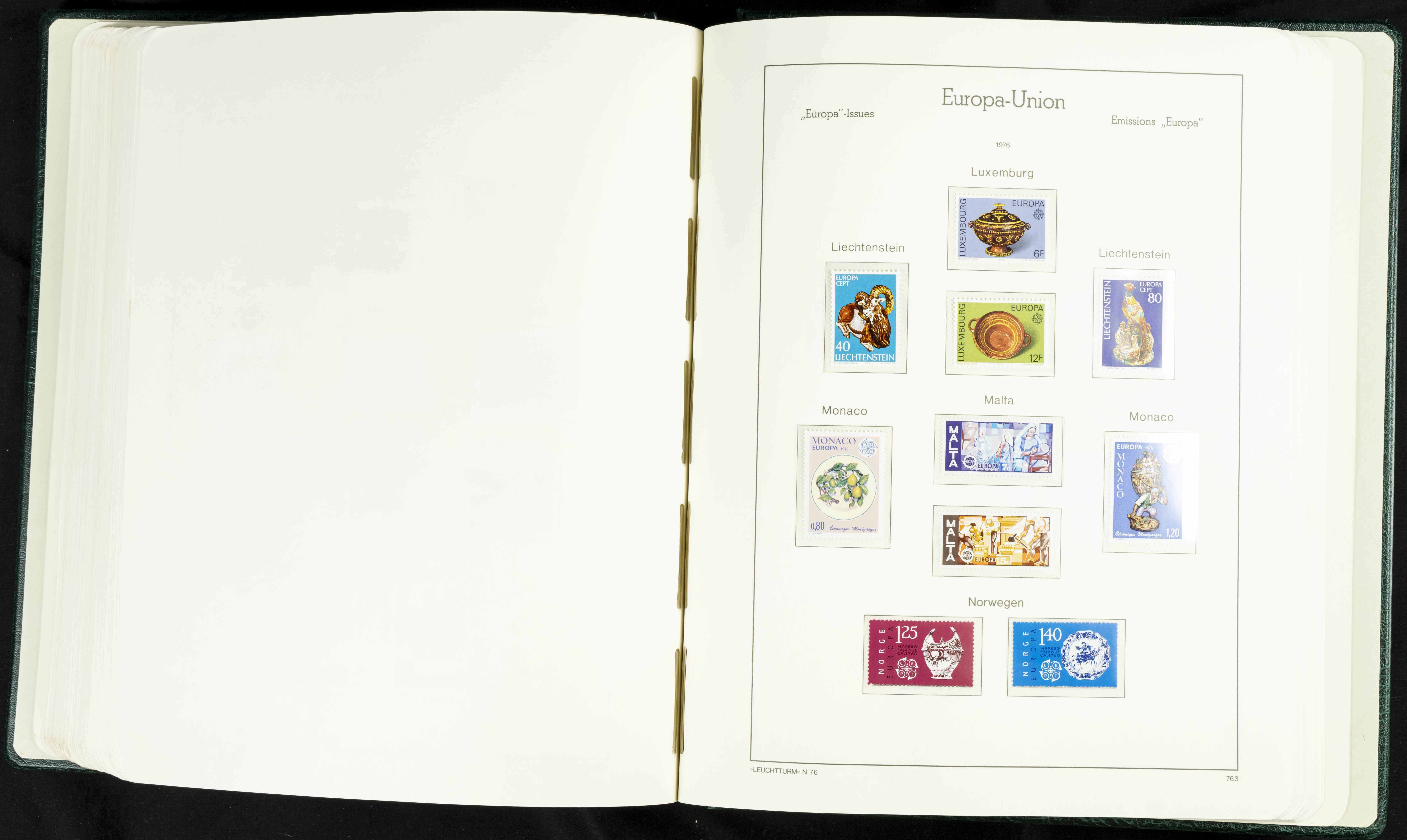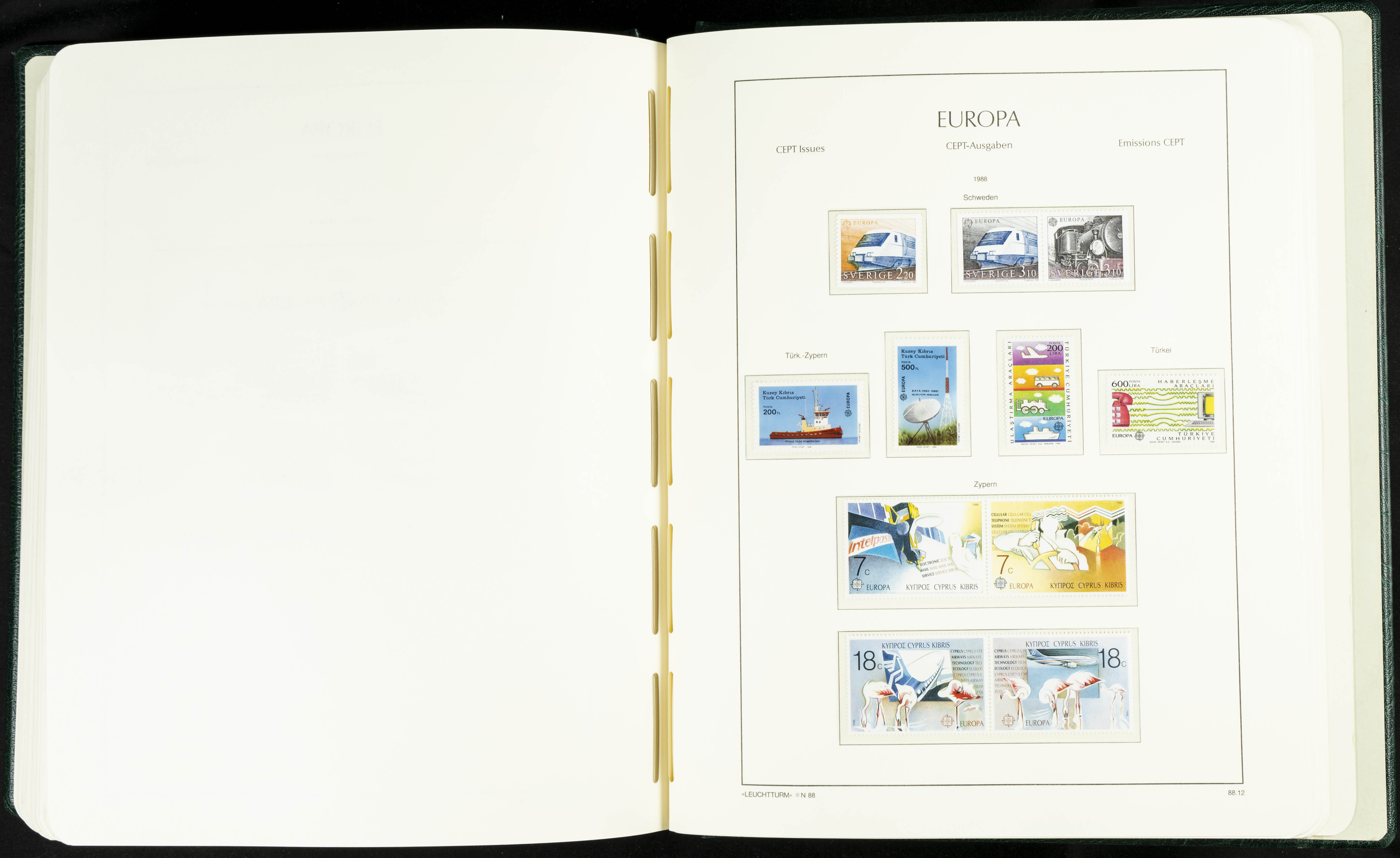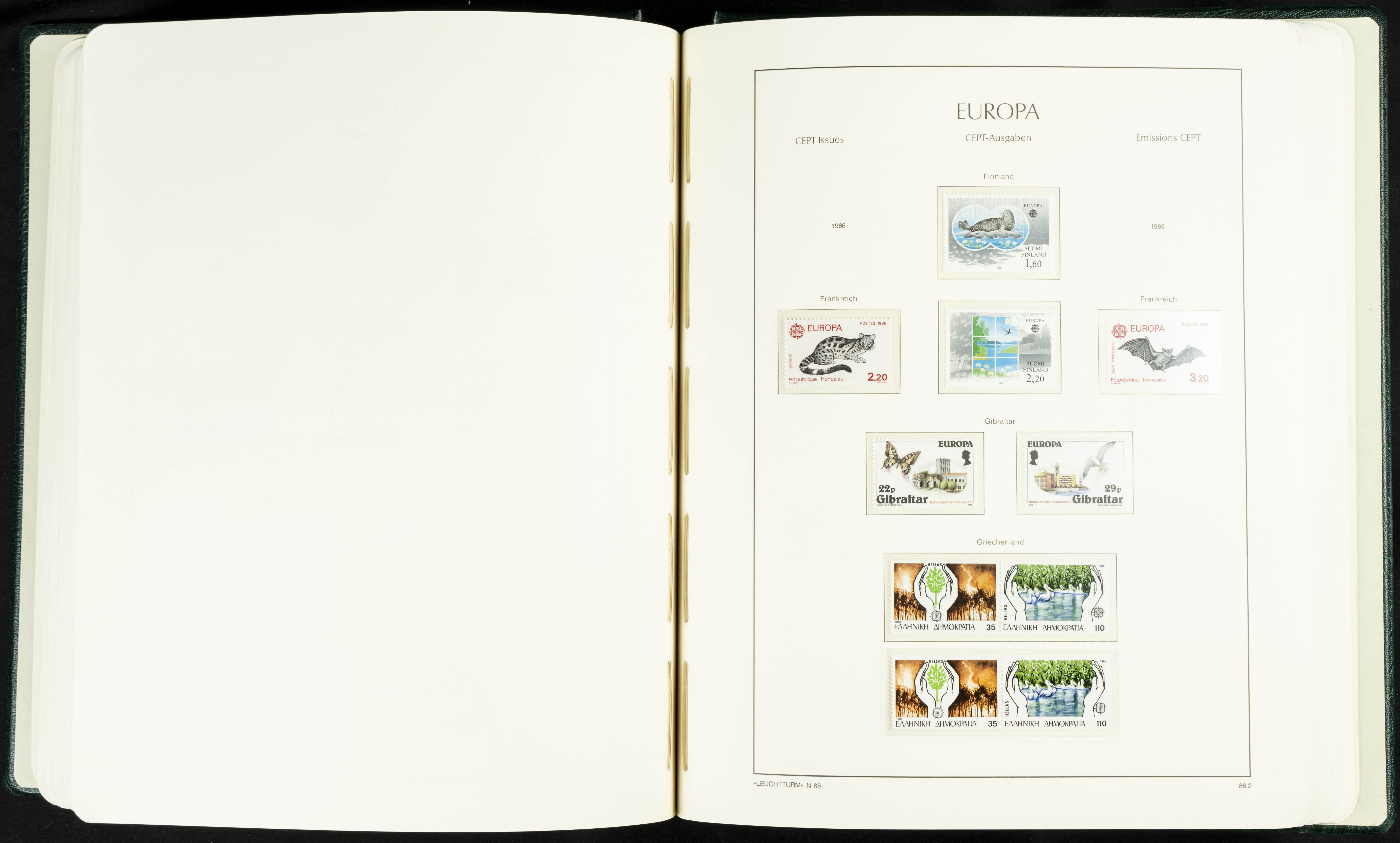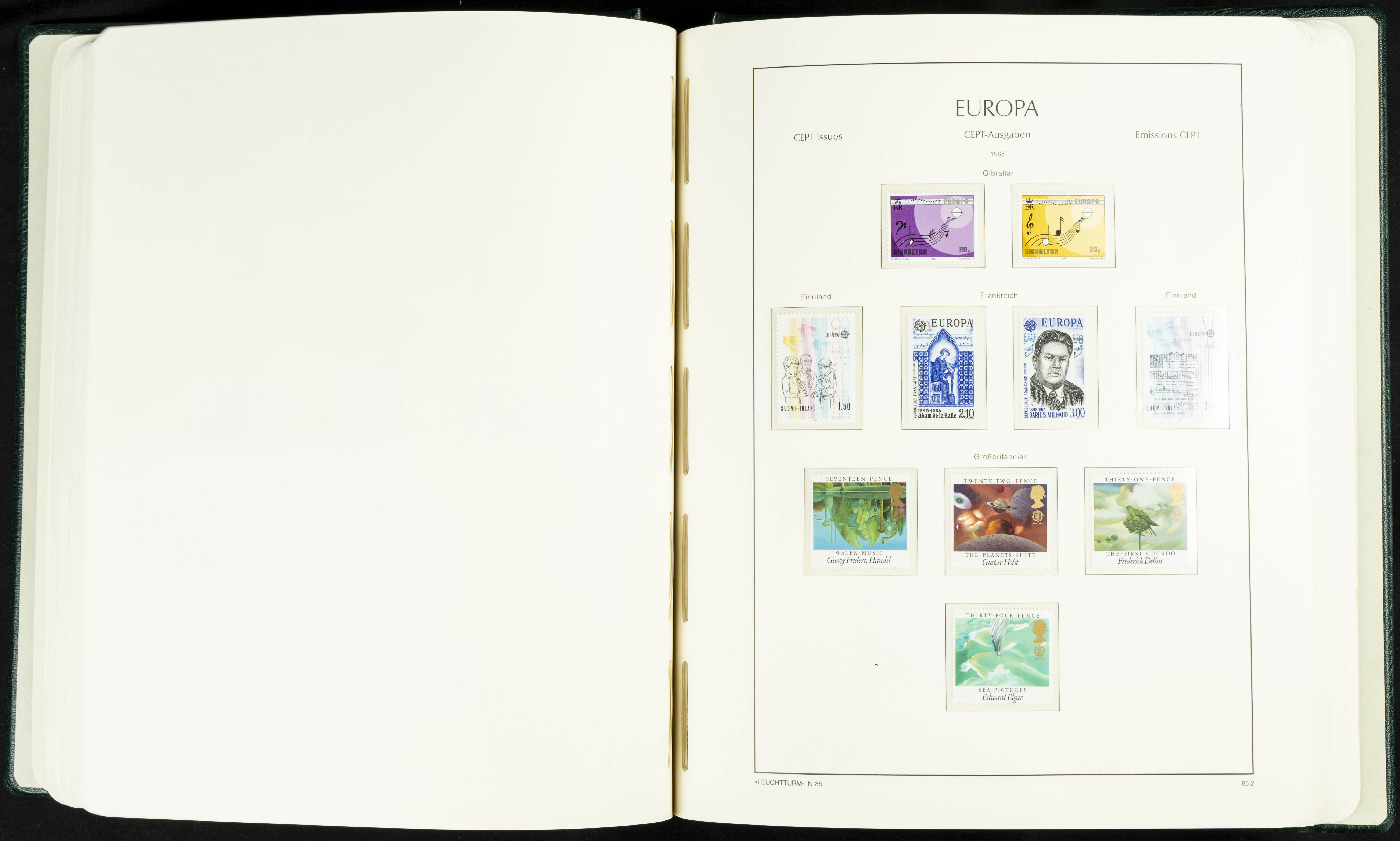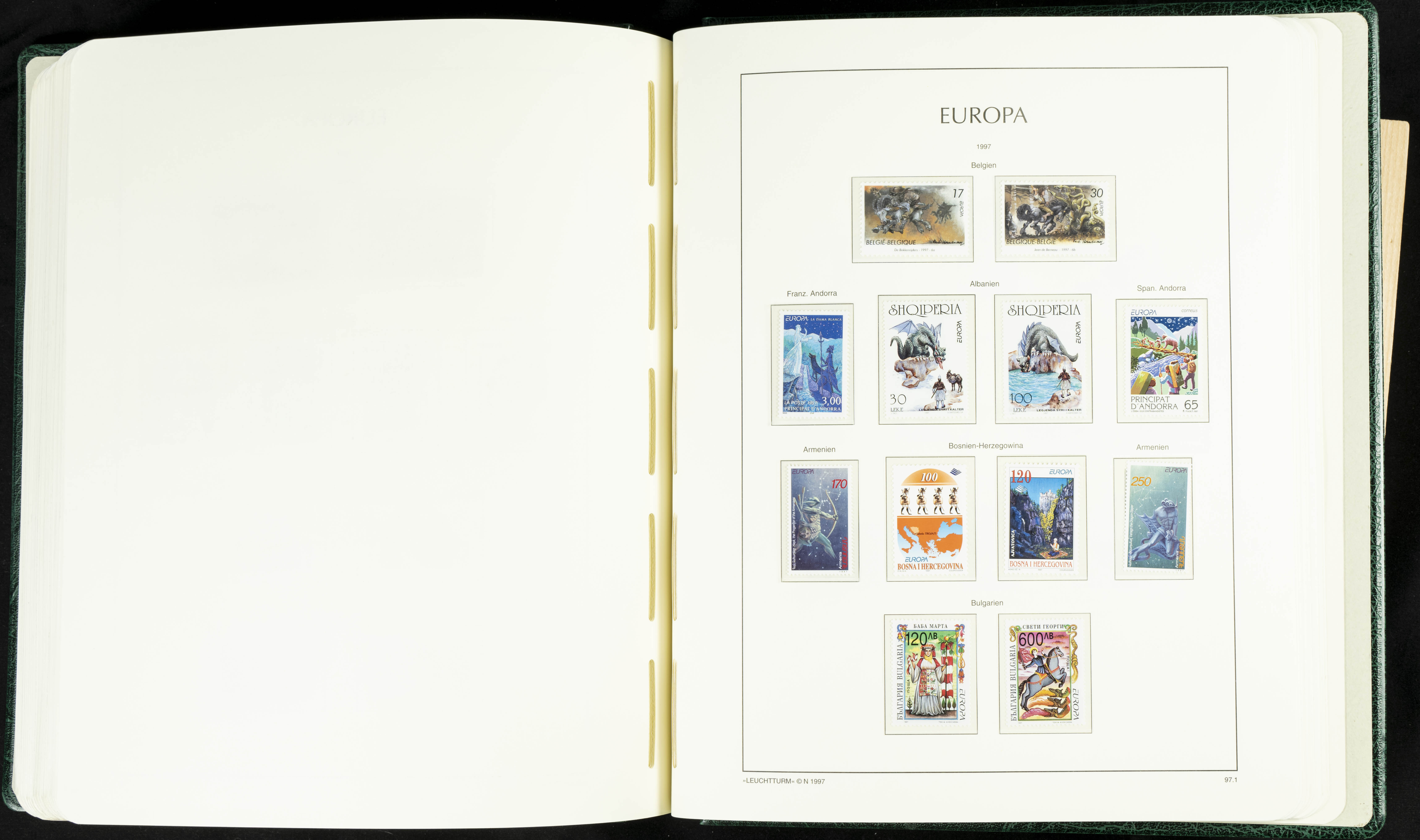 ★★/★(1949ca). Interesante y prácticamente completa colección del Tema Europa y Europeístico (excepto dos series de Italia y Trieste) entre 1949 y 1998, en nuevo sin fijasellos (montada en álbumes Faro). ALTISIMO VALOR DE CATALOGO. A EXAMINAR.