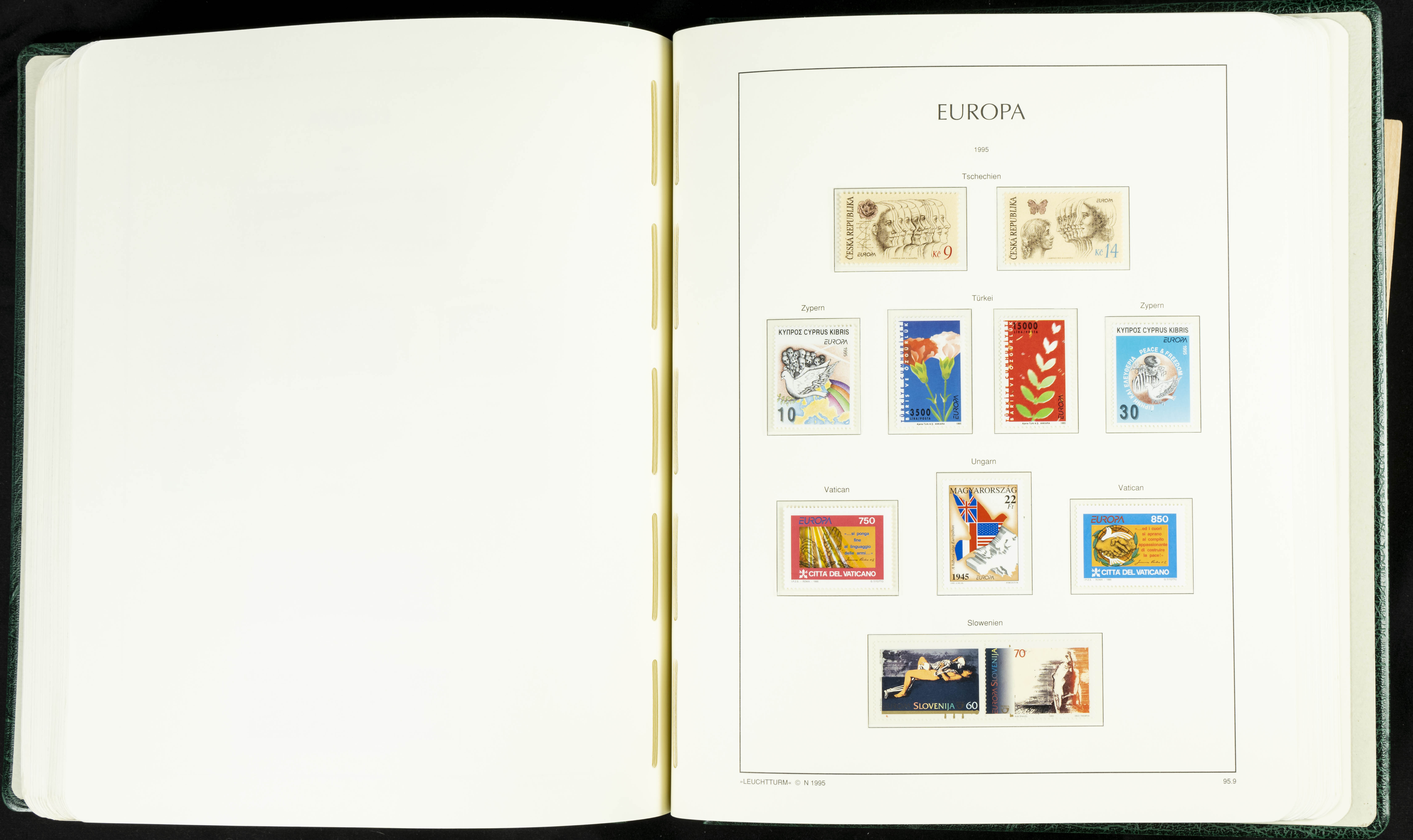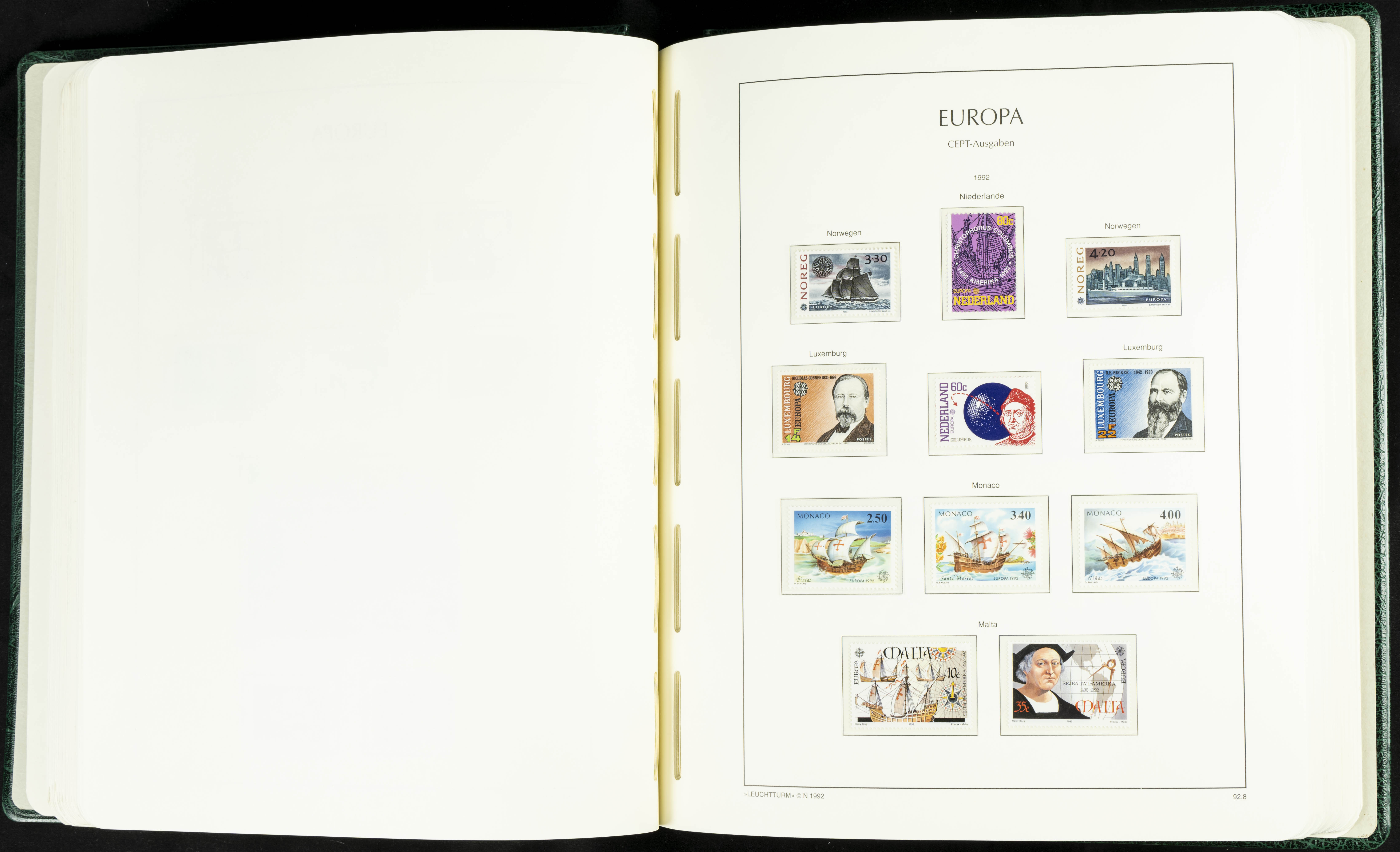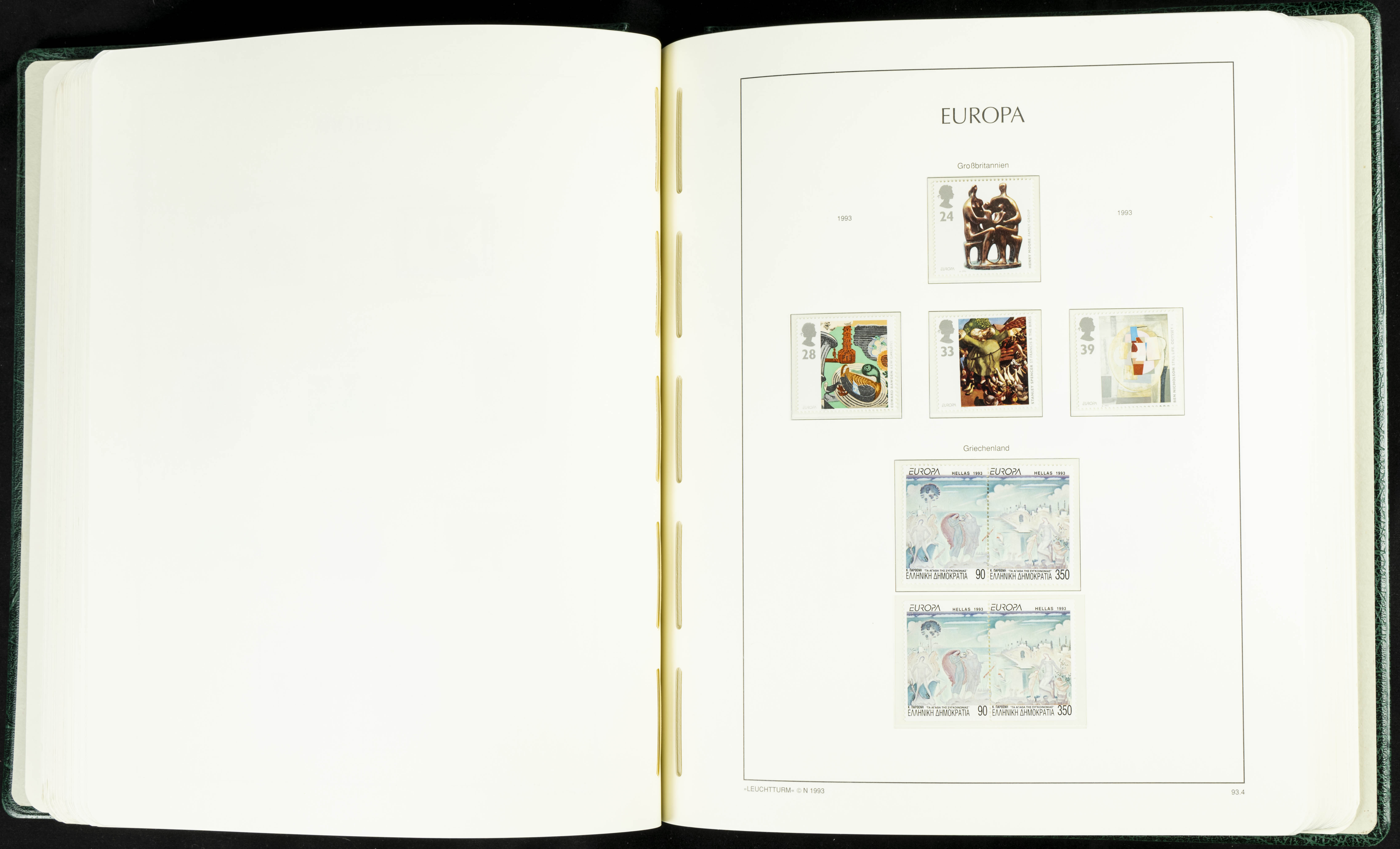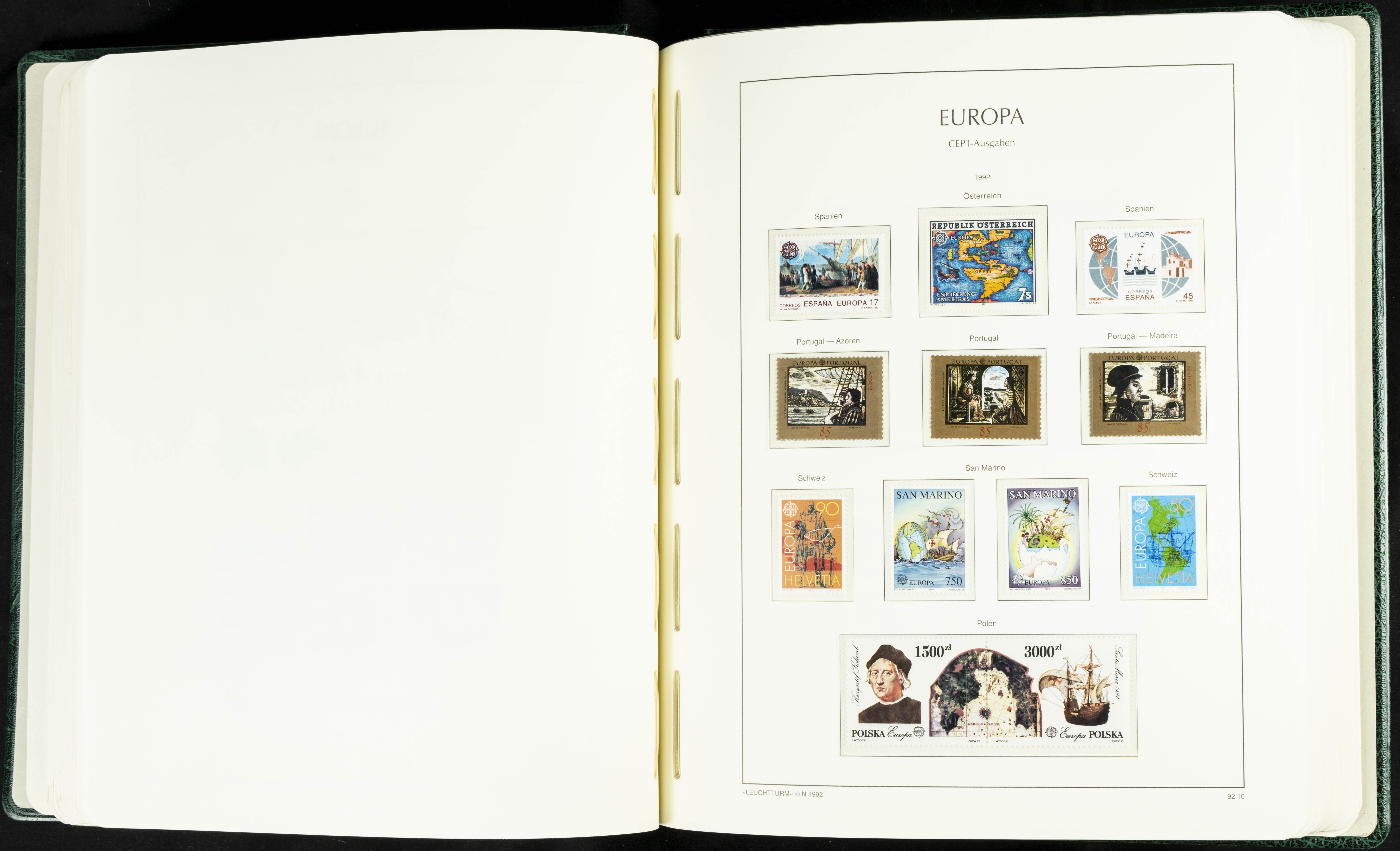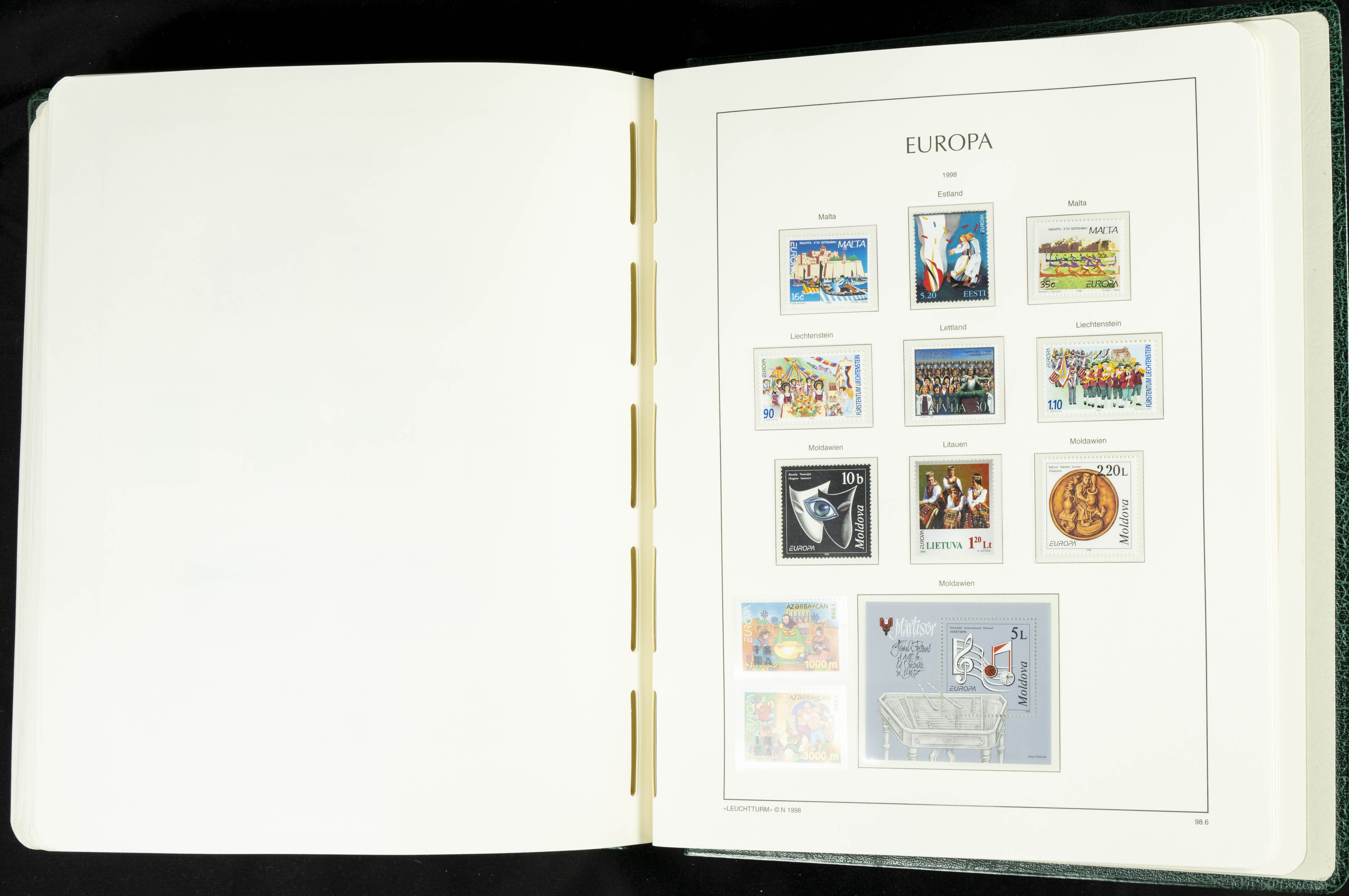 ★★/★(1949ca). Interesante y prácticamente completa colección del Tema Europa y Europeístico (excepto dos series de Italia y Trieste) entre 1949 y 1998, en nuevo sin fijasellos (montada en álbumes Faro). ALTISIMO VALOR DE CATALOGO. A EXAMINAR.